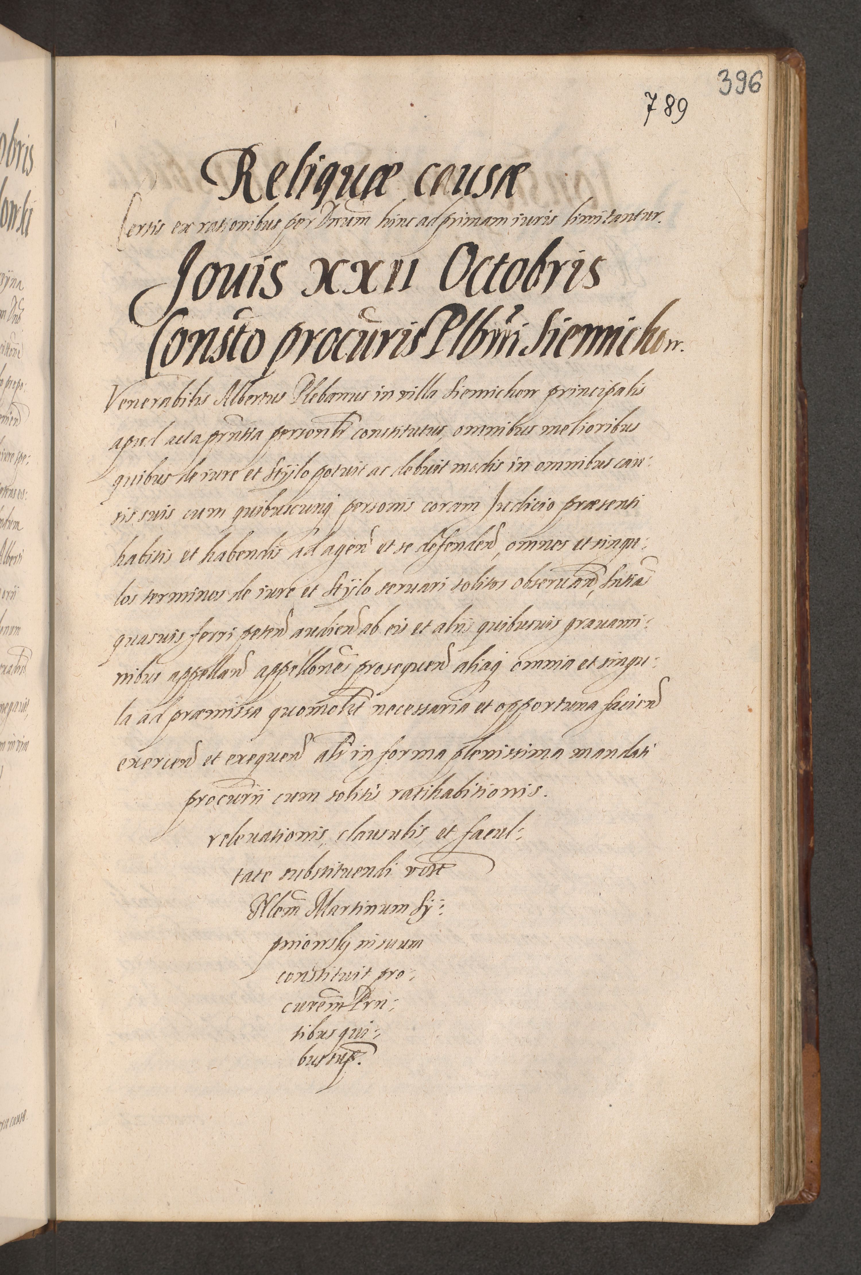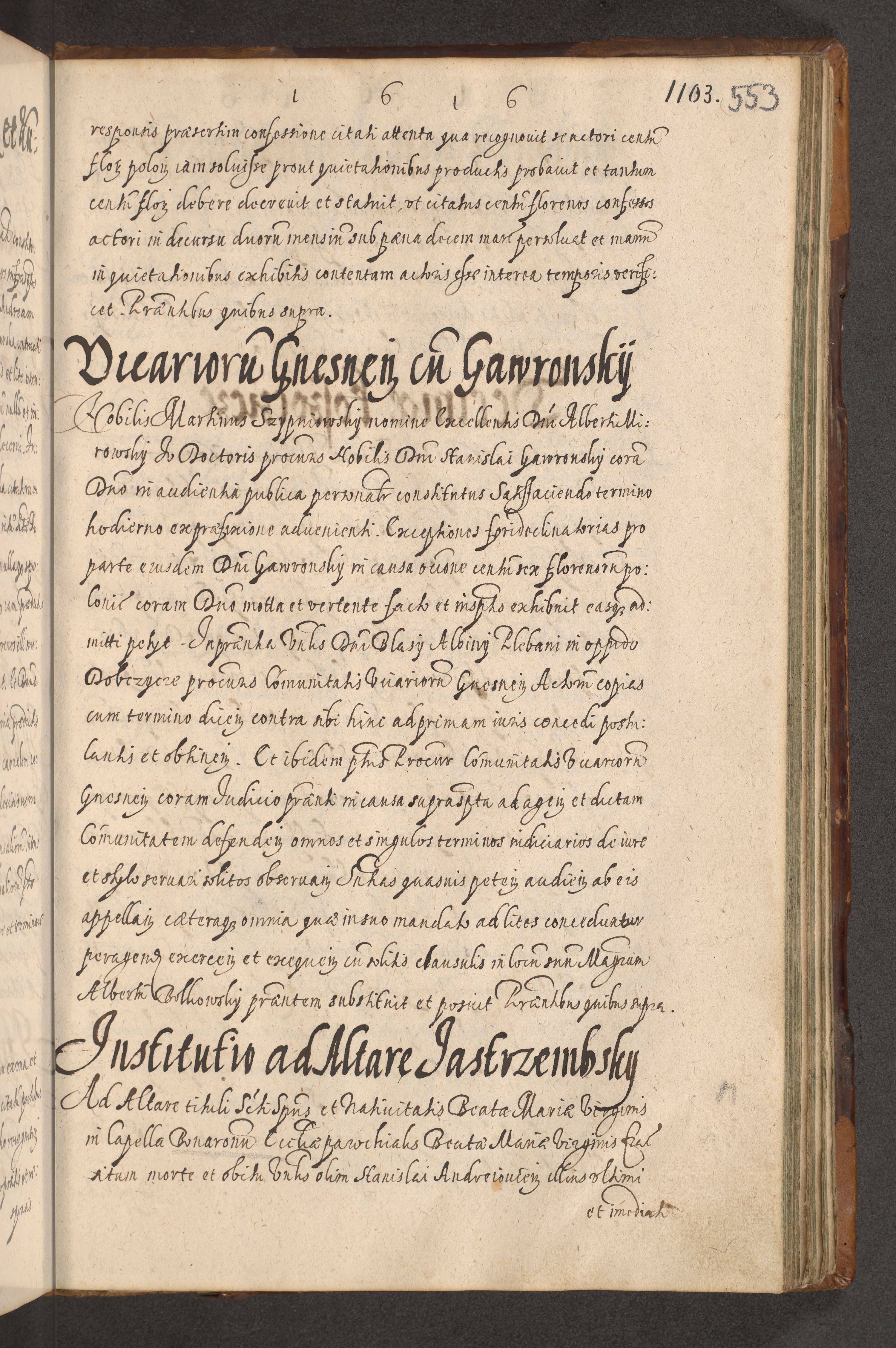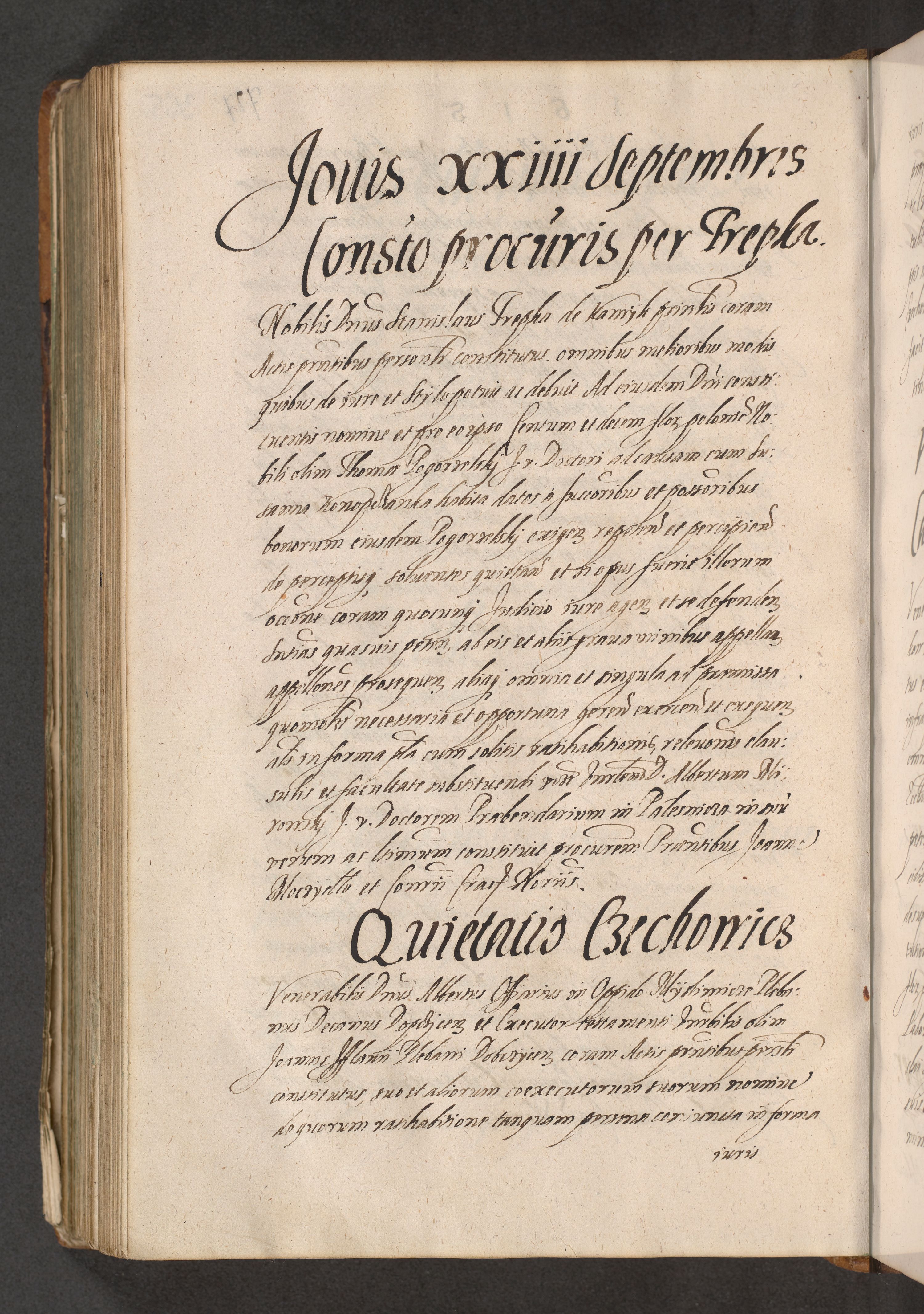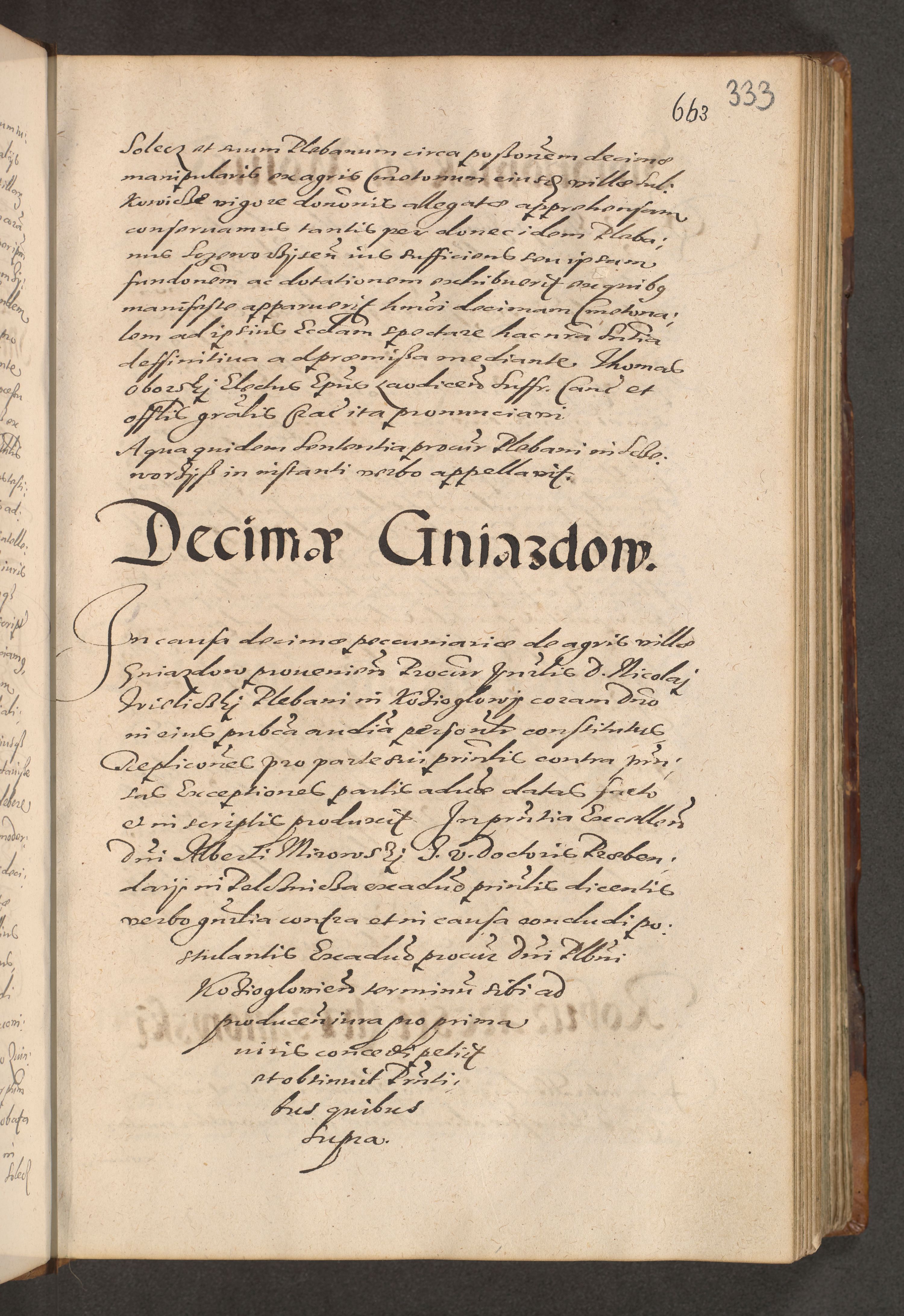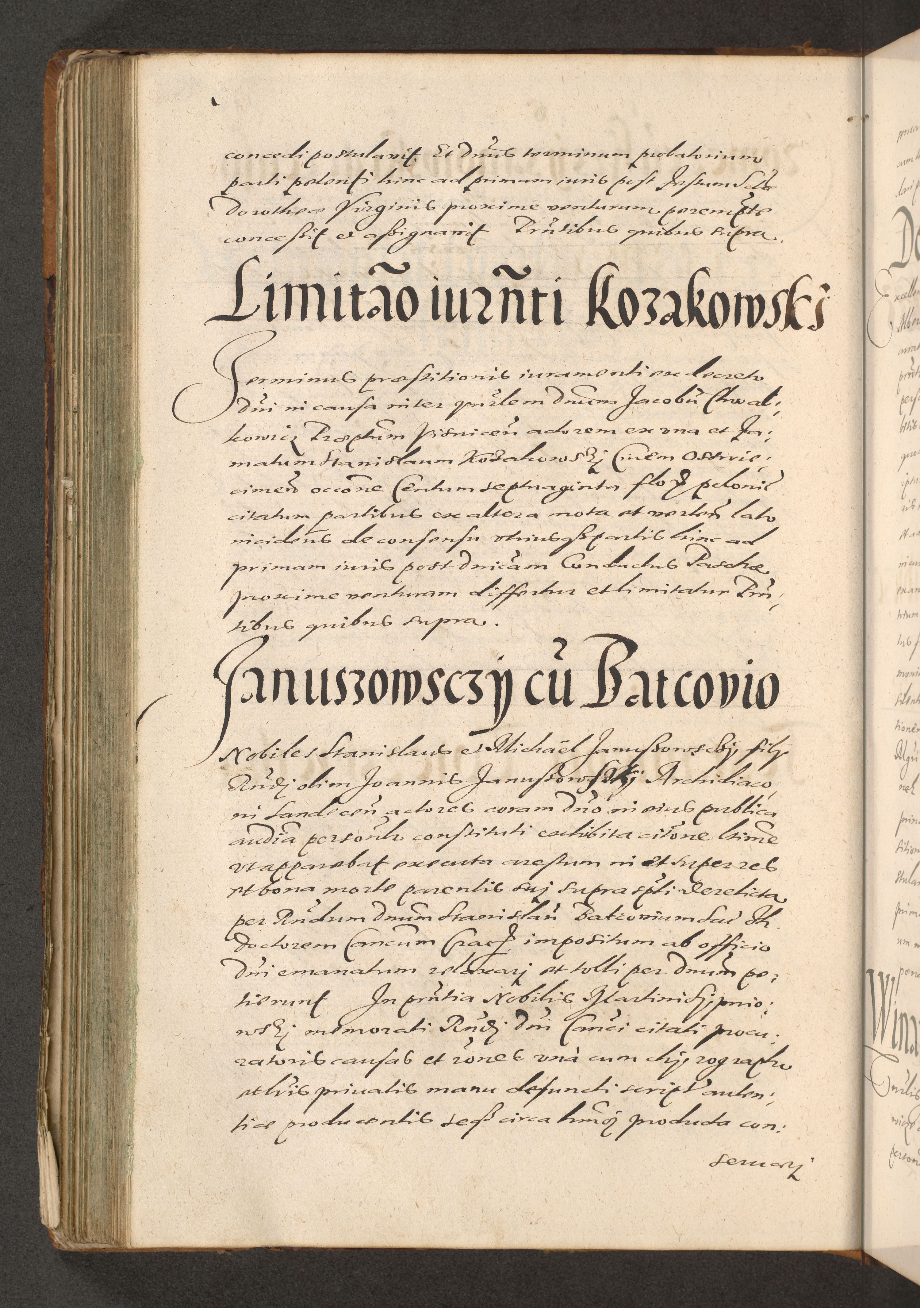 Illustrissimo et Reverendissimo in Christo Patre Domino Domino Petro Tylicki Dei et Apostolice Sedis Gratia Episcopo Cracoviensis Duce Severiensis Acta actorum causarum sententiarum tam interloquutoriarum quam definitivarum decretorum obligationum, quietationum, recognitionum, constitutionum procuratorum etc. etc. coram Admodum Reverendo Domino Thoma Oborski I. V. Doctore Canonico Vicario in Spiritualibus et Officiali generali Cracoviensis in anno Domini Millesimo Sexcentessimo Decimoquarto Cuius Indictio duodecima Pontificus SS. D. N. D. Pauli Divina providentia Papae quinti Anno decimo foeliciter incipiunt