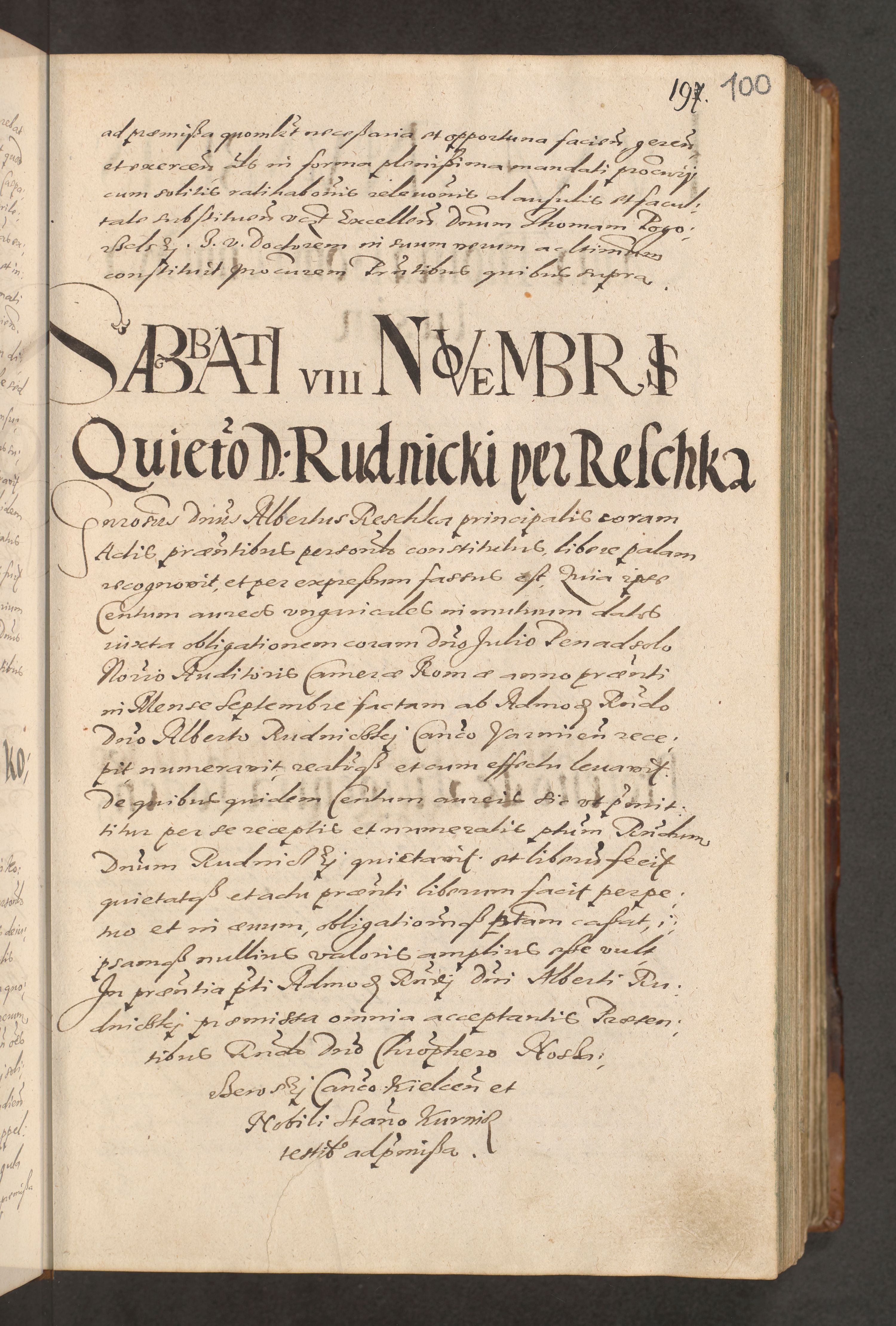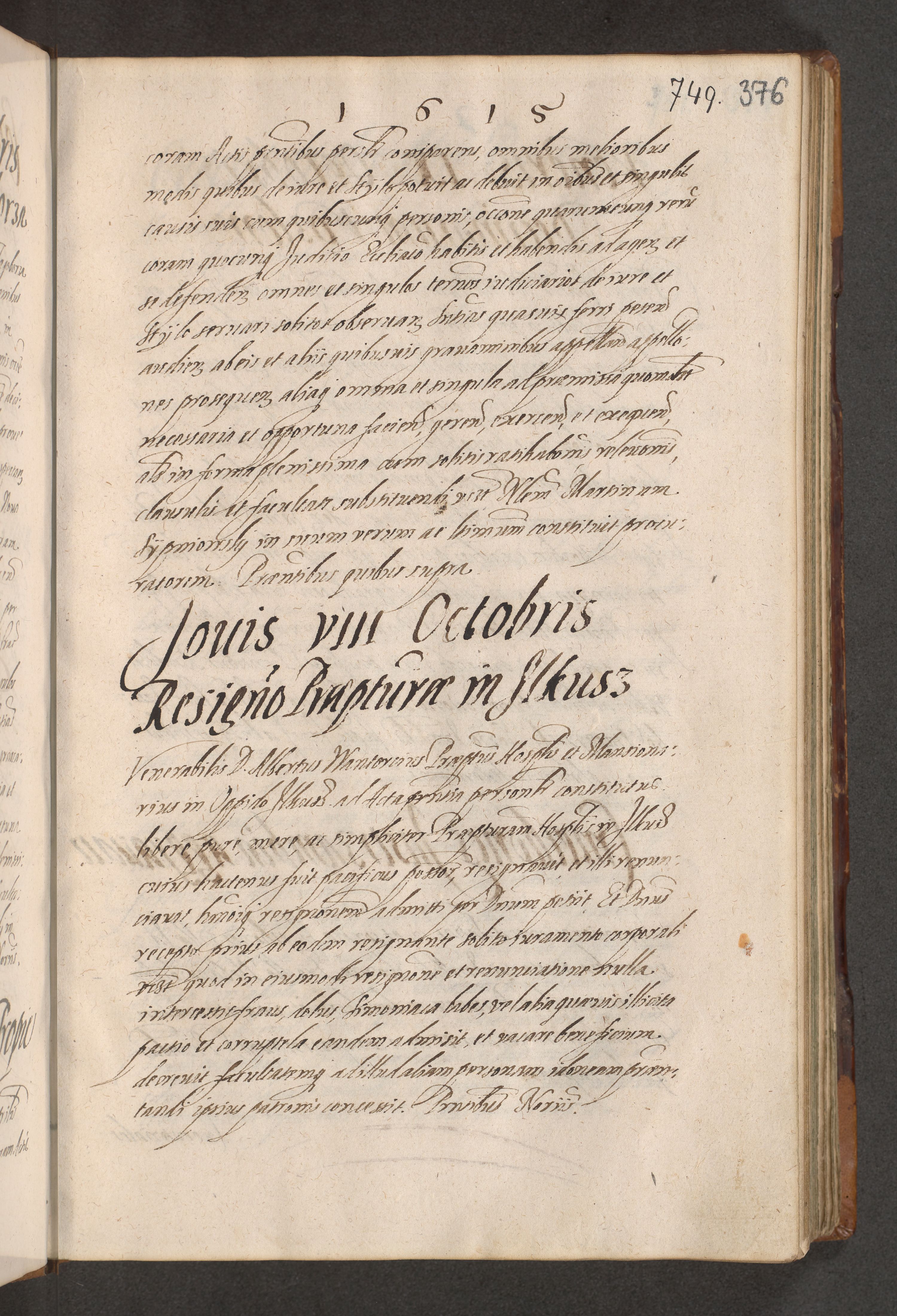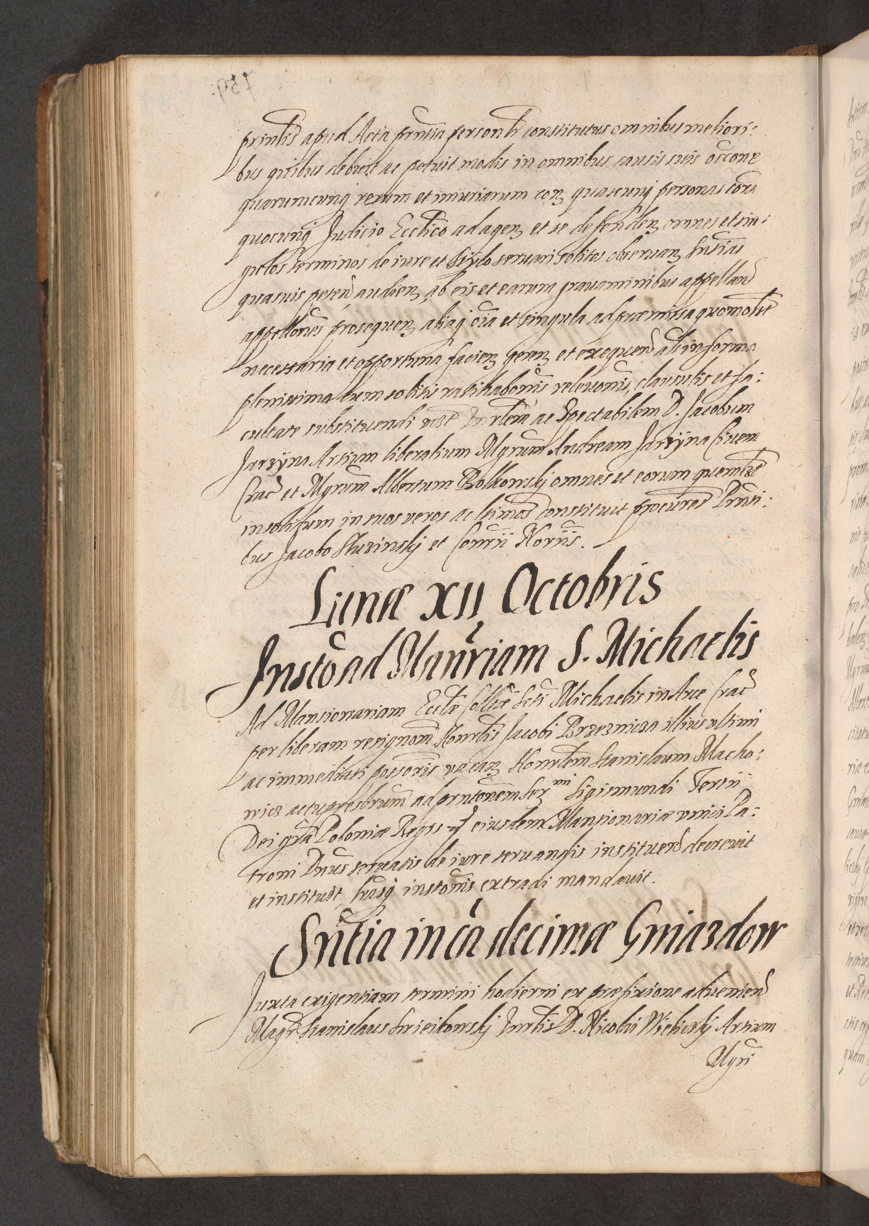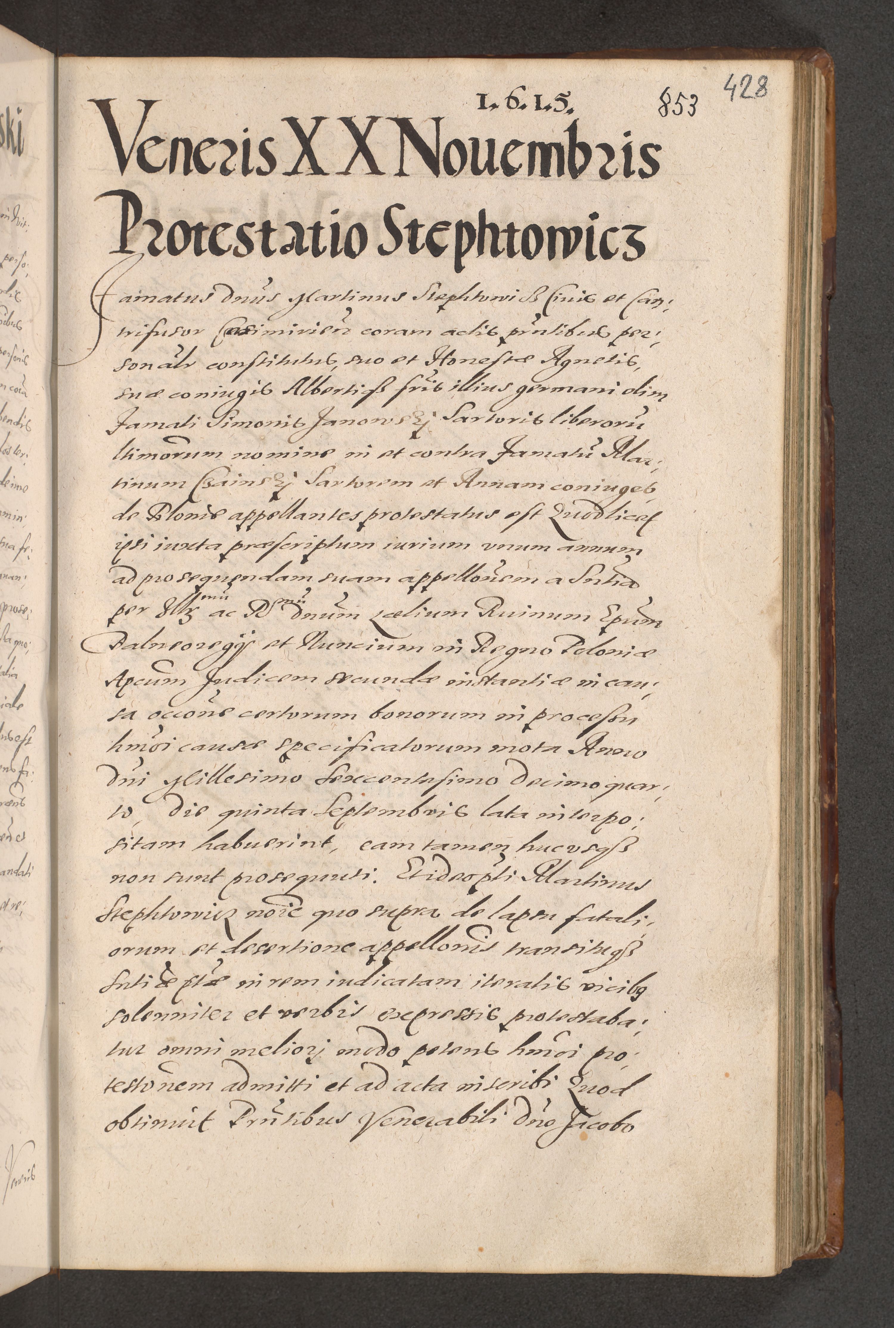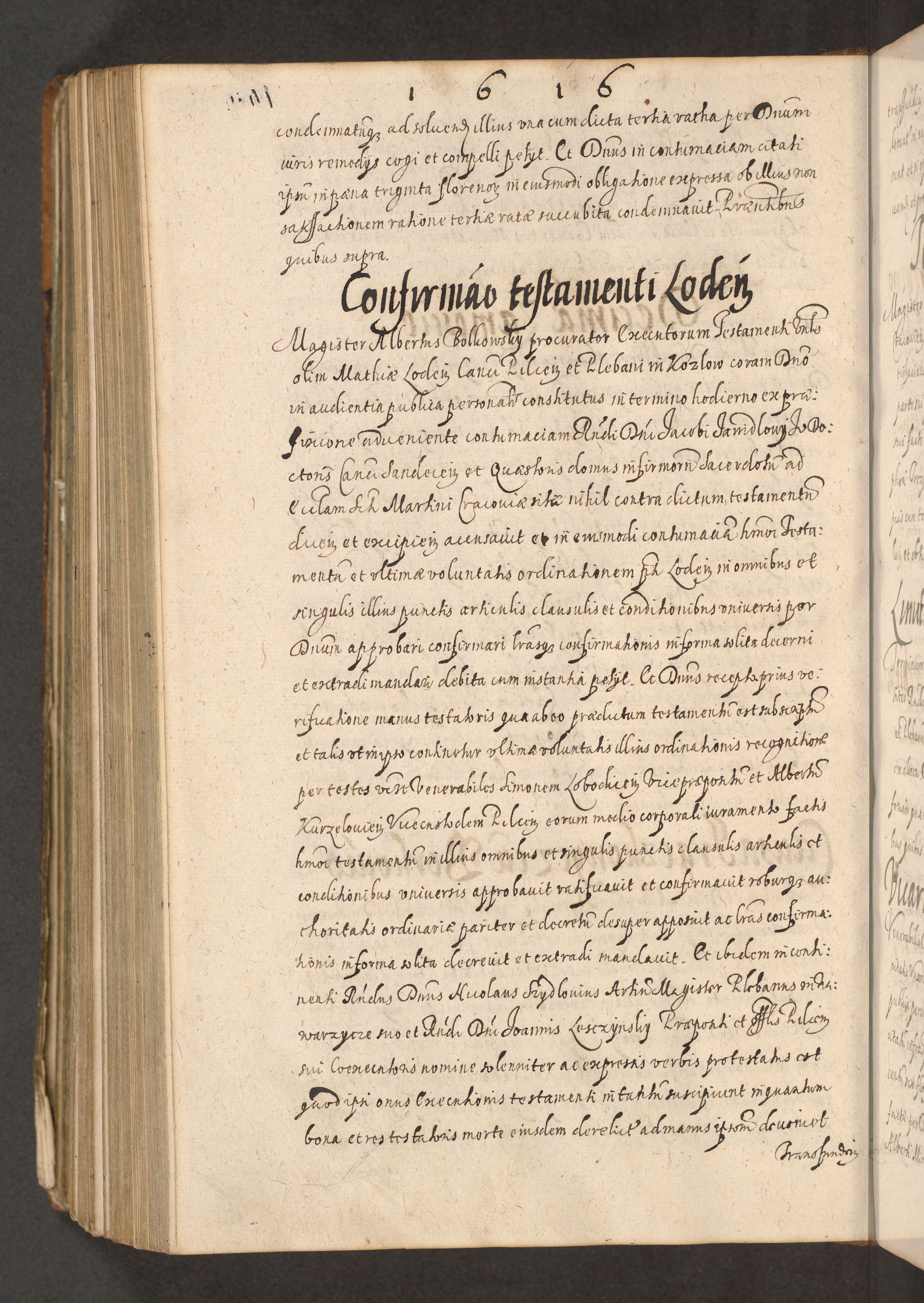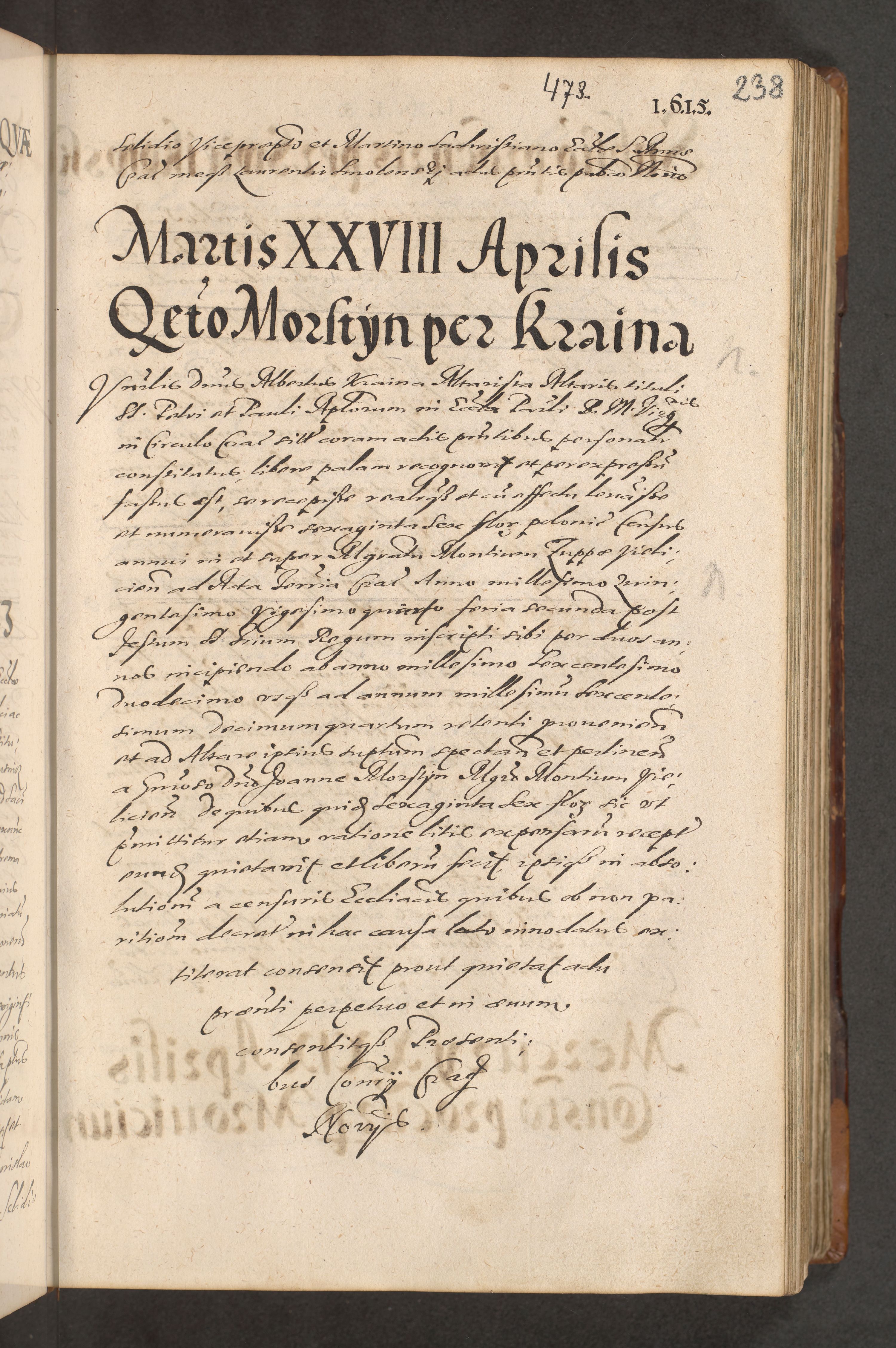 Illustrissimo et Reverendissimo in Christo Patre Domino Domino Petro Tylicki Dei et Apostolice Sedis Gratia Episcopo Cracoviensis Duce Severiensis Acta actorum causarum sententiarum tam interloquutoriarum quam definitivarum decretorum obligationum, quietationum, recognitionum, constitutionum procuratorum etc. etc. coram Admodum Reverendo Domino Thoma Oborski I. V. Doctore Canonico Vicario in Spiritualibus et Officiali generali Cracoviensis in anno Domini Millesimo Sexcentessimo Decimoquarto Cuius Indictio duodecima Pontificus SS. D. N. D. Pauli Divina providentia Papae quinti Anno decimo foeliciter incipiunt