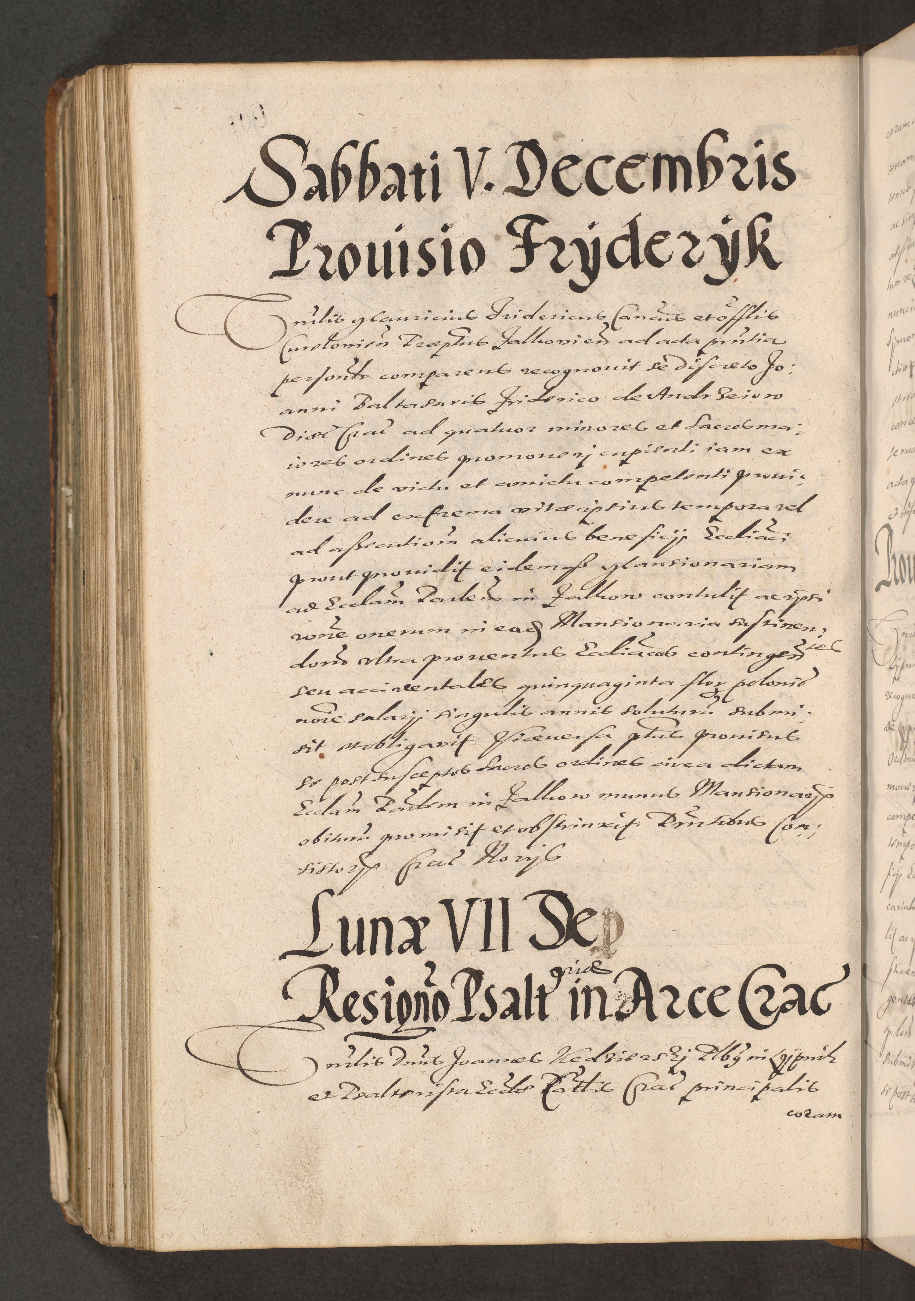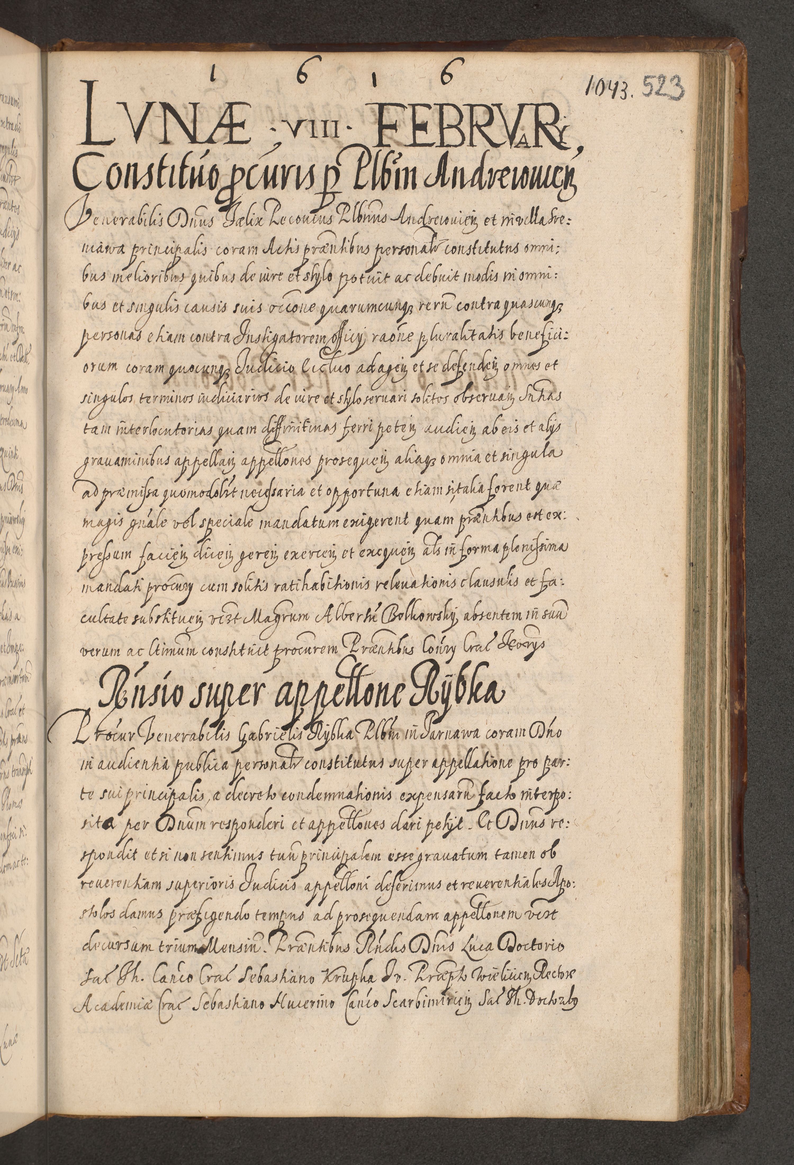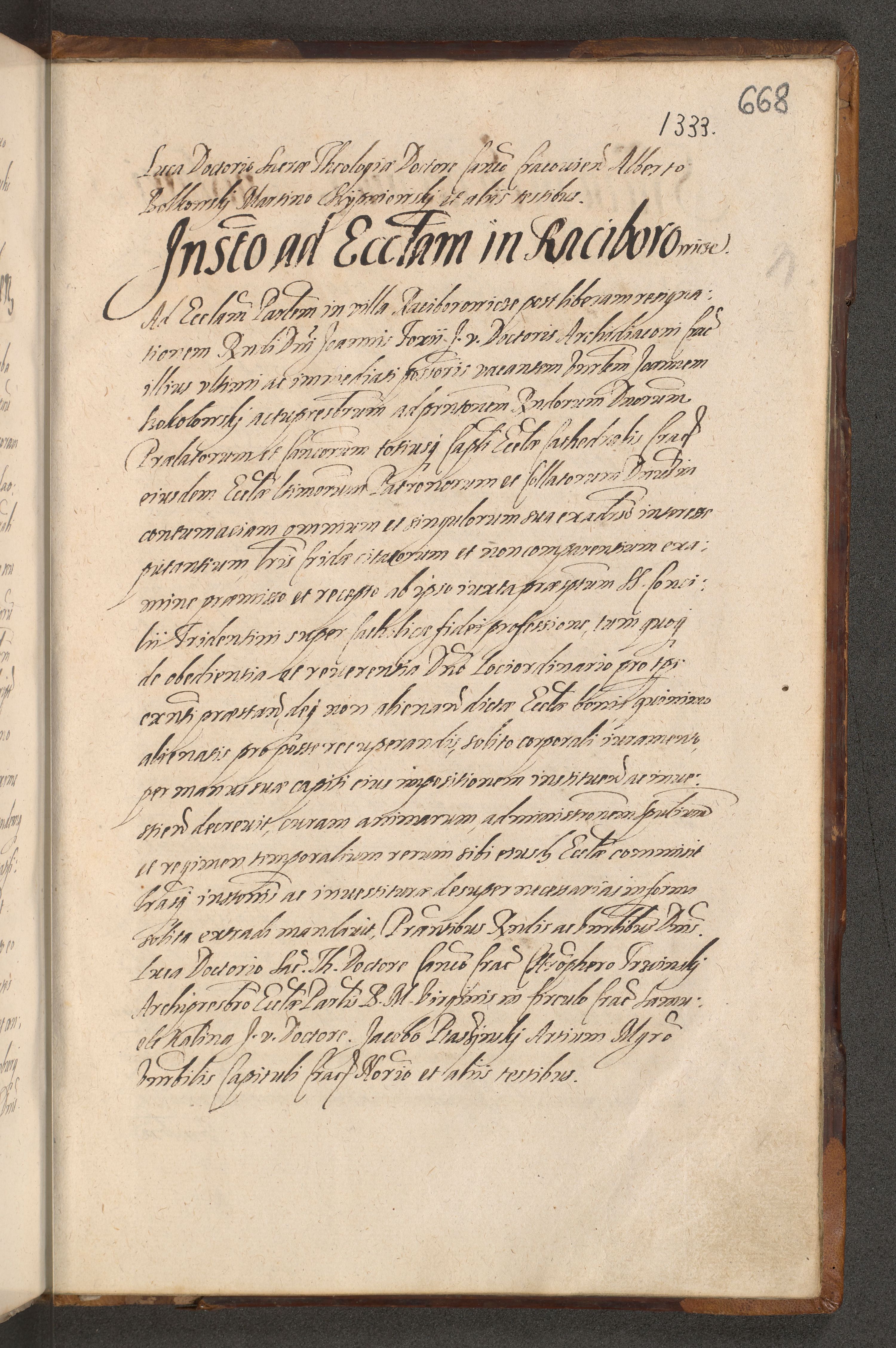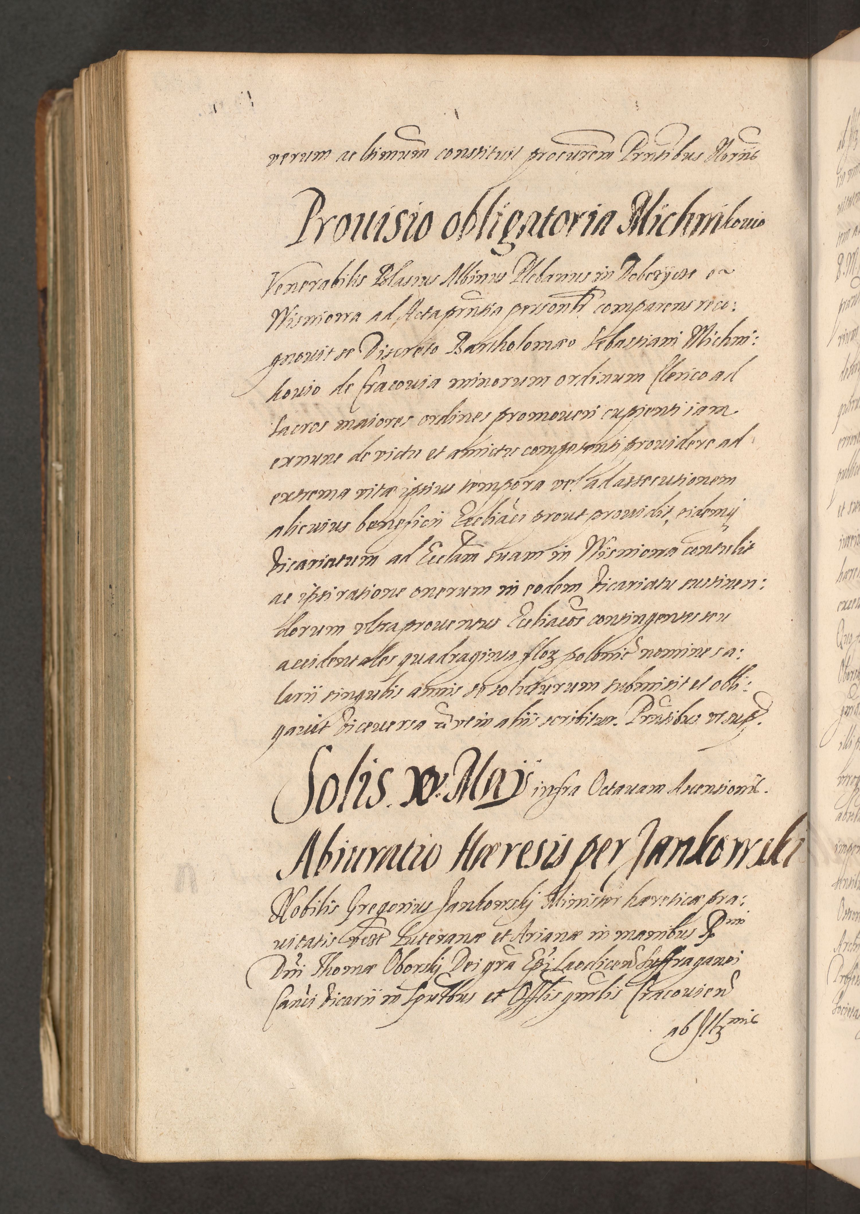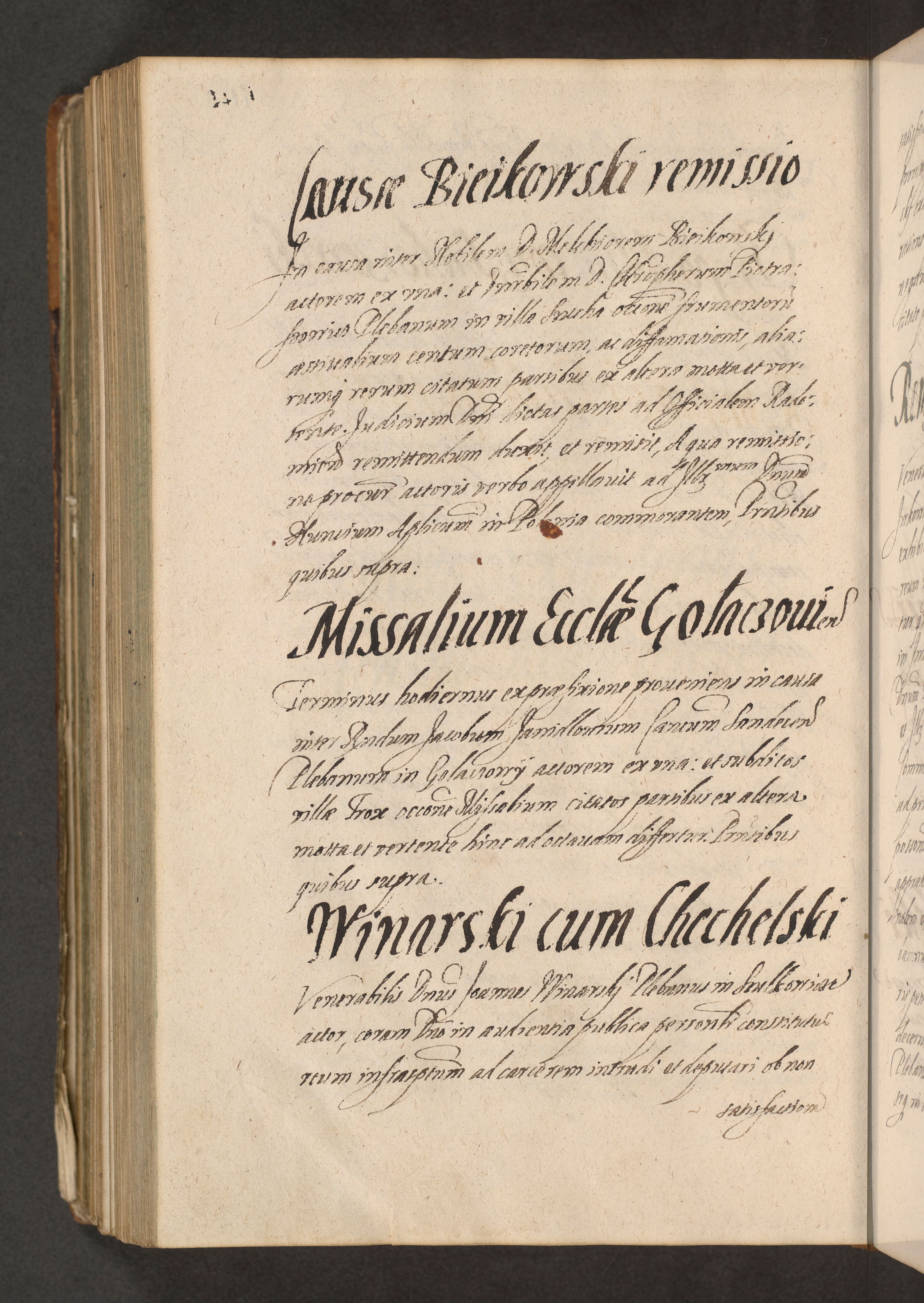 Illustrissimo et Reverendissimo in Christo Patre Domino Domino Petro Tylicki Dei et Apostolice Sedis Gratia Episcopo Cracoviensis Duce Severiensis Acta actorum causarum sententiarum tam interloquutoriarum quam definitivarum decretorum obligationum, quietationum, recognitionum, constitutionum procuratorum etc. etc. coram Admodum Reverendo Domino Thoma Oborski I. V. Doctore Canonico Vicario in Spiritualibus et Officiali generali Cracoviensis in anno Domini Millesimo Sexcentessimo Decimoquarto Cuius Indictio duodecima Pontificus SS. D. N. D. Pauli Divina providentia Papae quinti Anno decimo foeliciter incipiunt