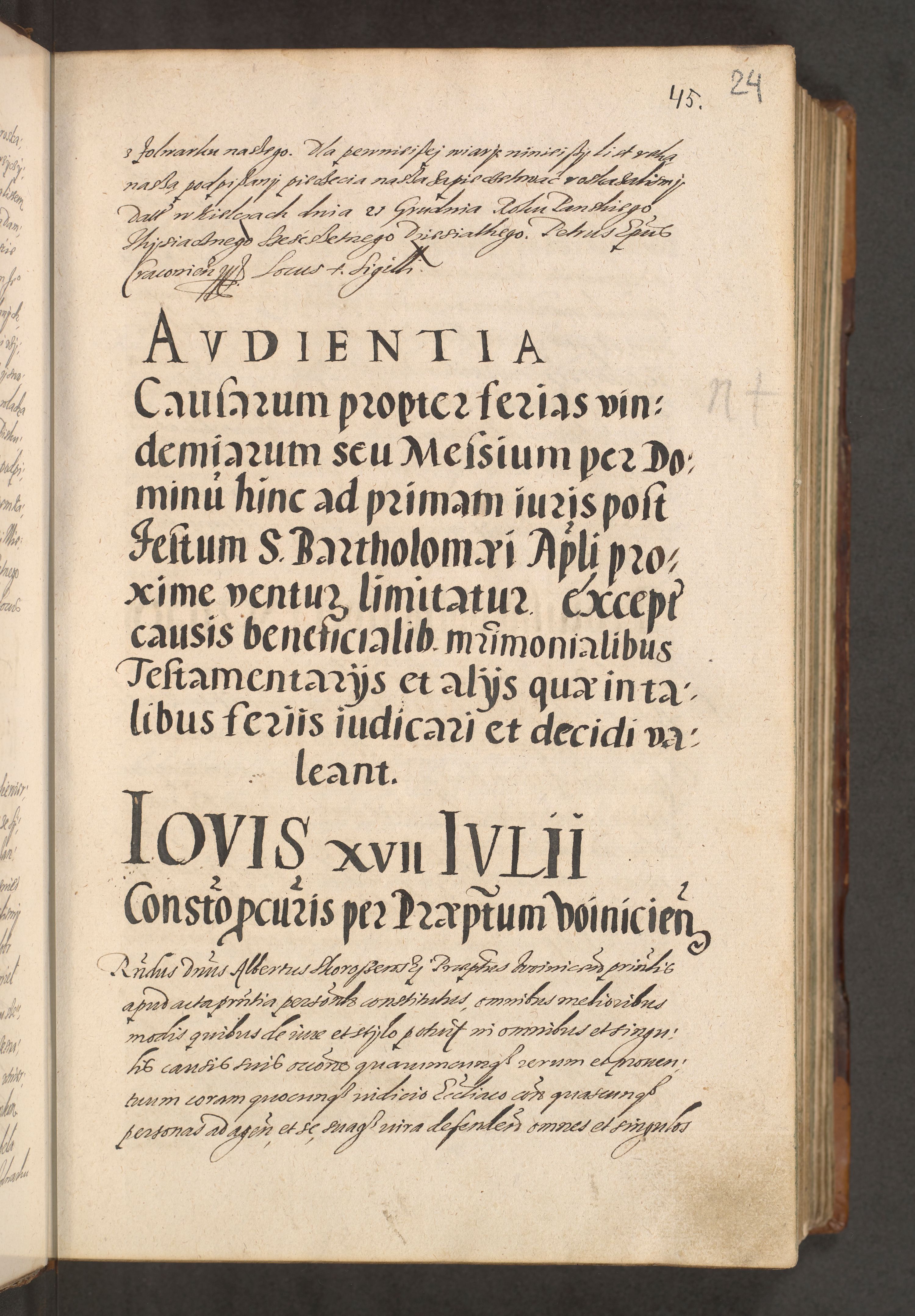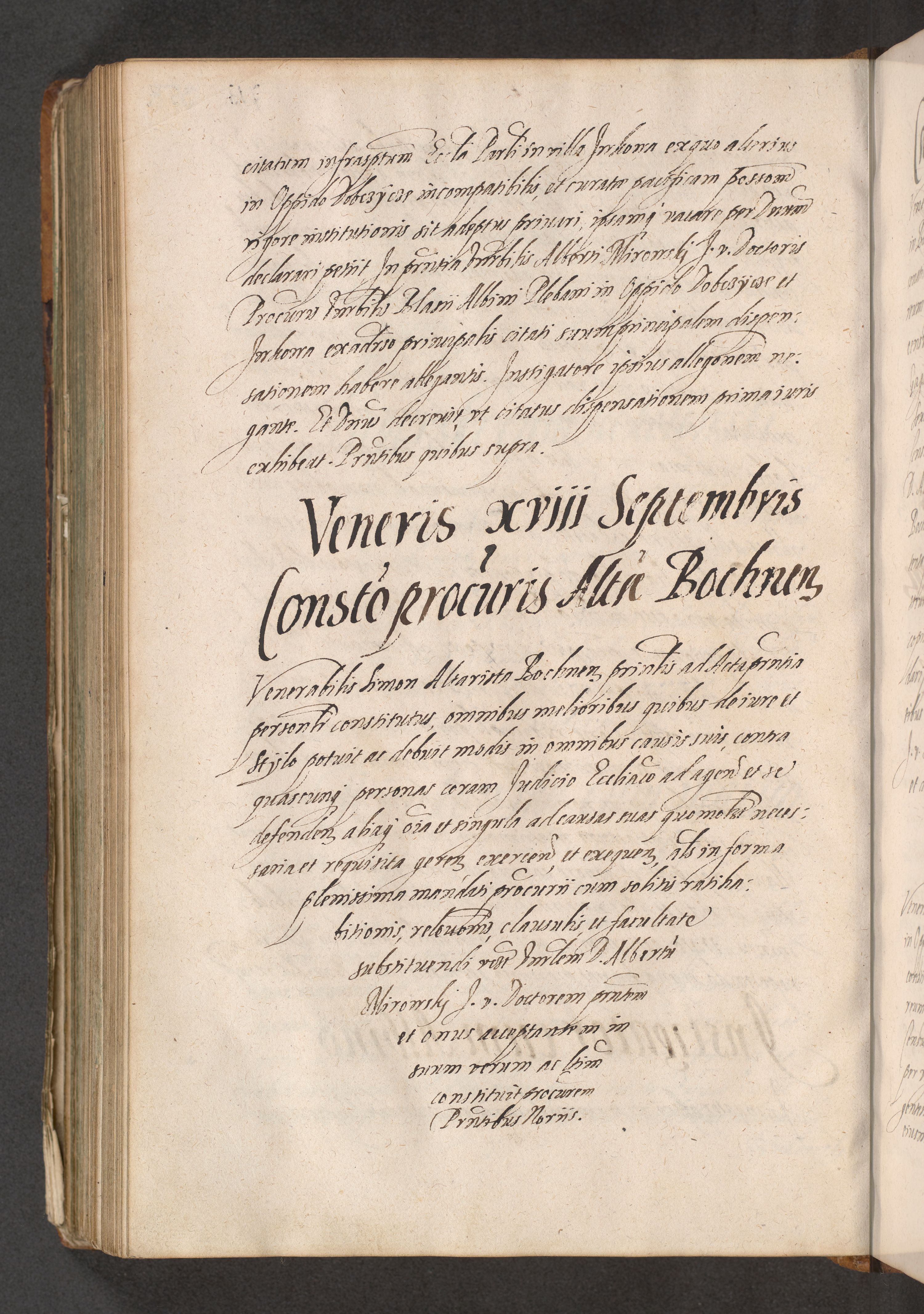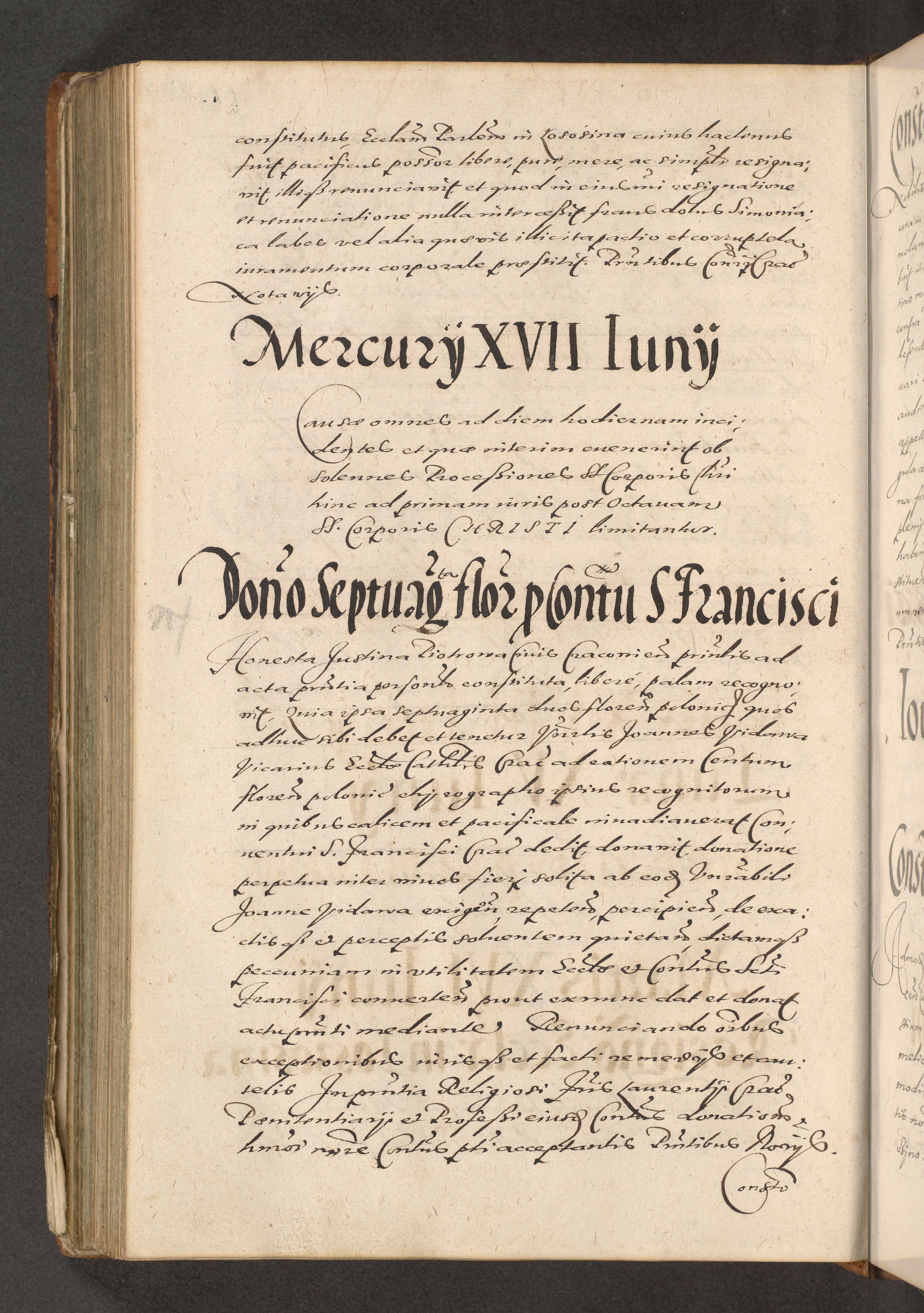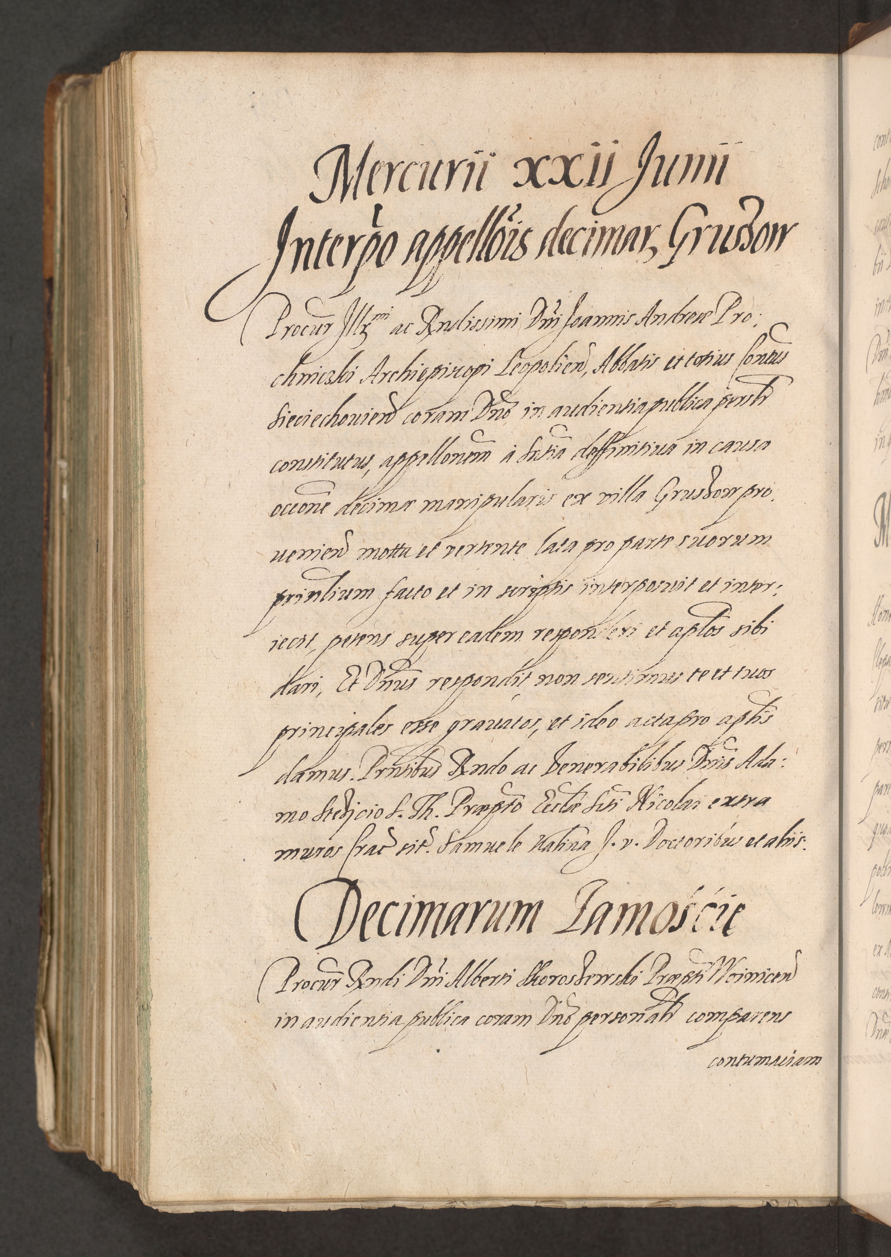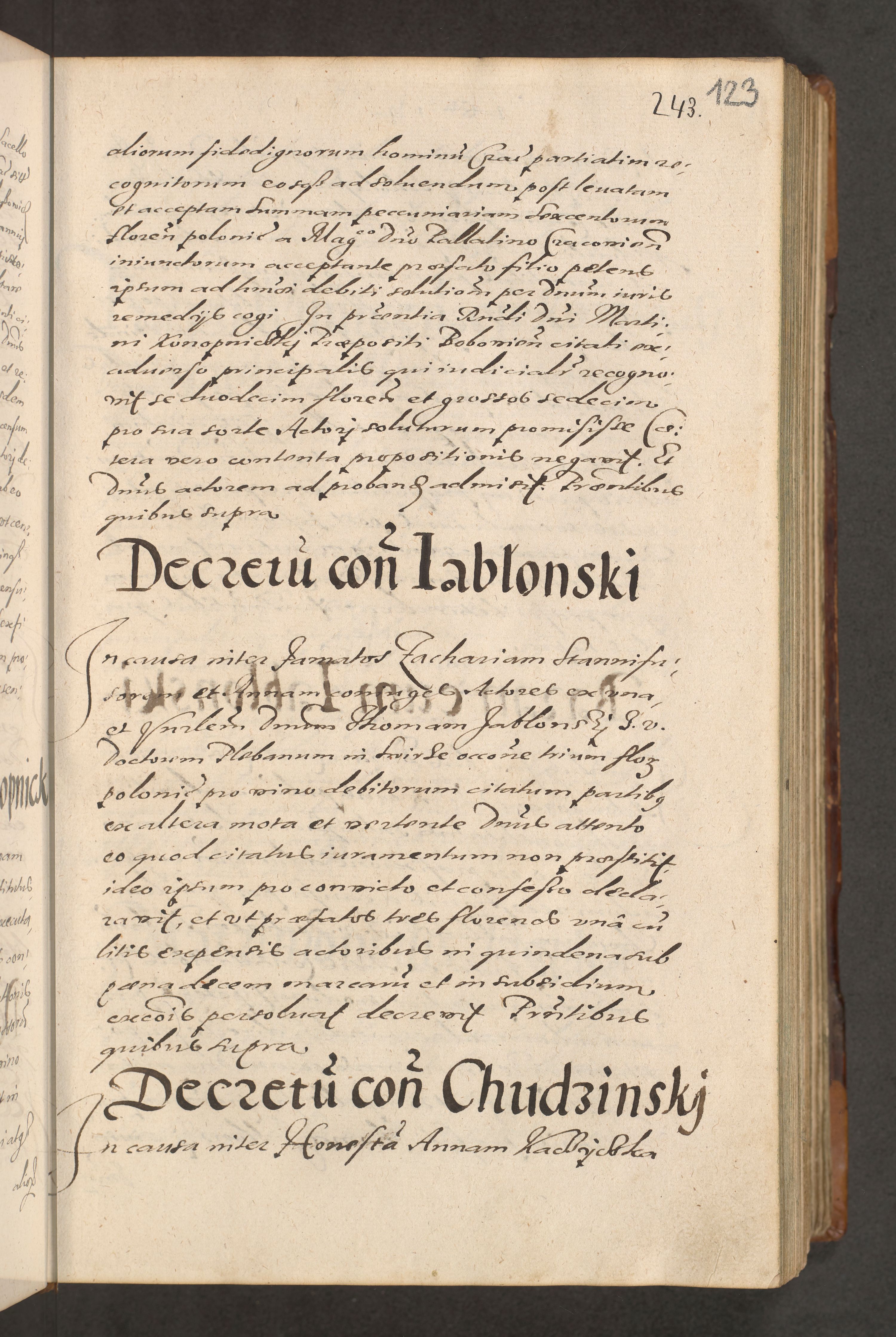 Illustrissimo et Reverendissimo in Christo Patre Domino Domino Petro Tylicki Dei et Apostolice Sedis Gratia Episcopo Cracoviensis Duce Severiensis Acta actorum causarum sententiarum tam interloquutoriarum quam definitivarum decretorum obligationum, quietationum, recognitionum, constitutionum procuratorum etc. etc. coram Admodum Reverendo Domino Thoma Oborski I. V. Doctore Canonico Vicario in Spiritualibus et Officiali generali Cracoviensis in anno Domini Millesimo Sexcentessimo Decimoquarto Cuius Indictio duodecima Pontificus SS. D. N. D. Pauli Divina providentia Papae quinti Anno decimo foeliciter incipiunt