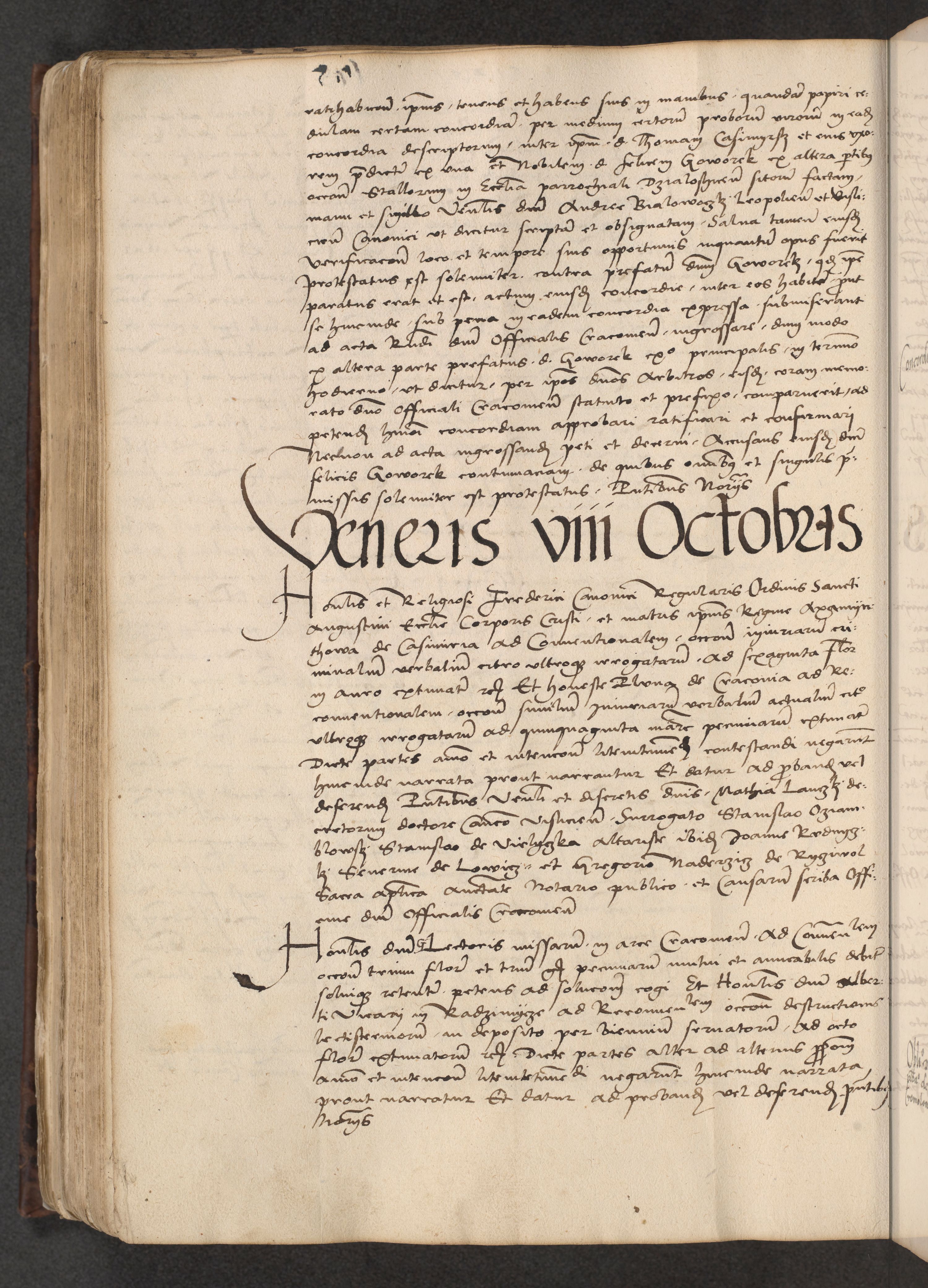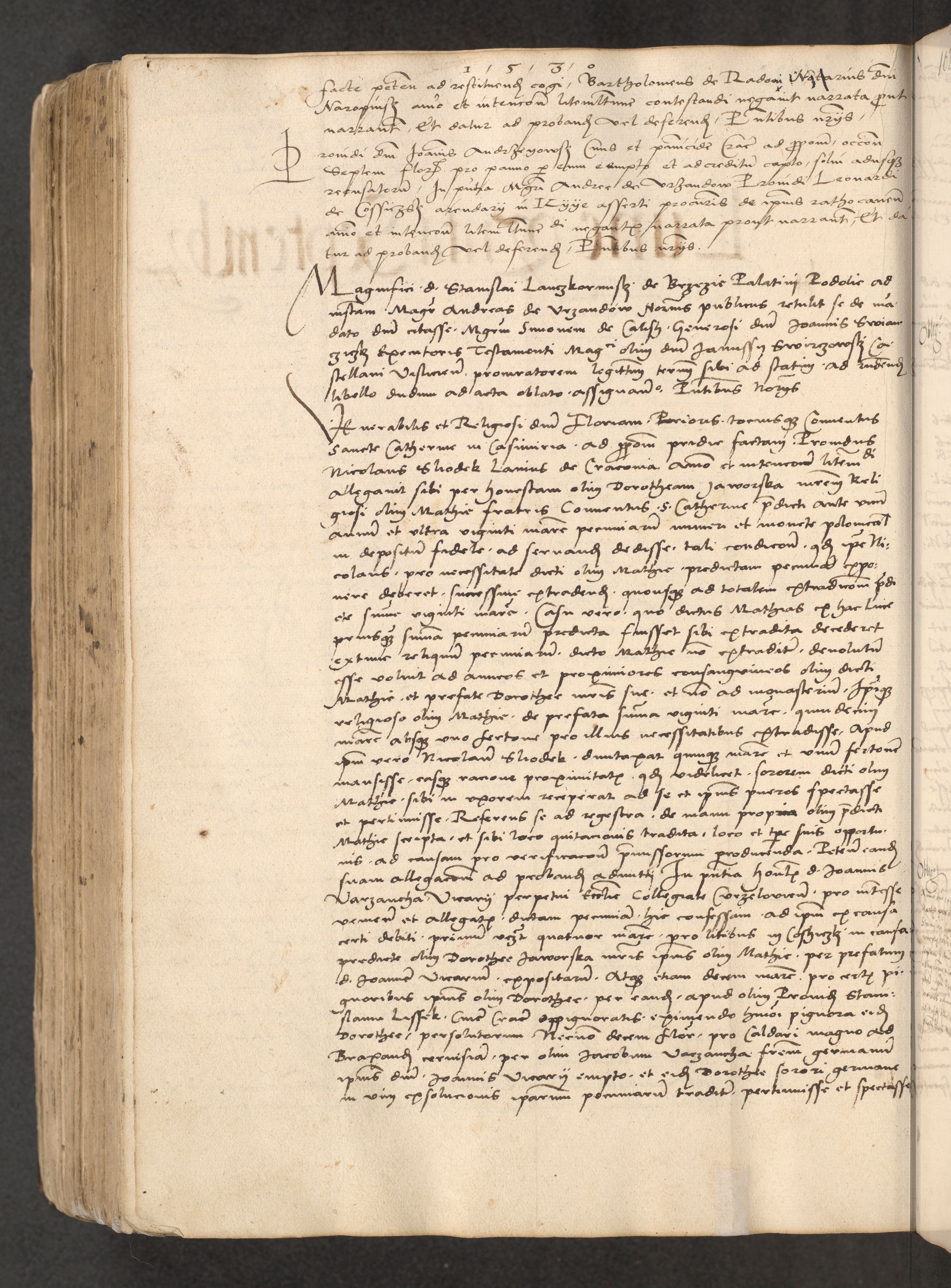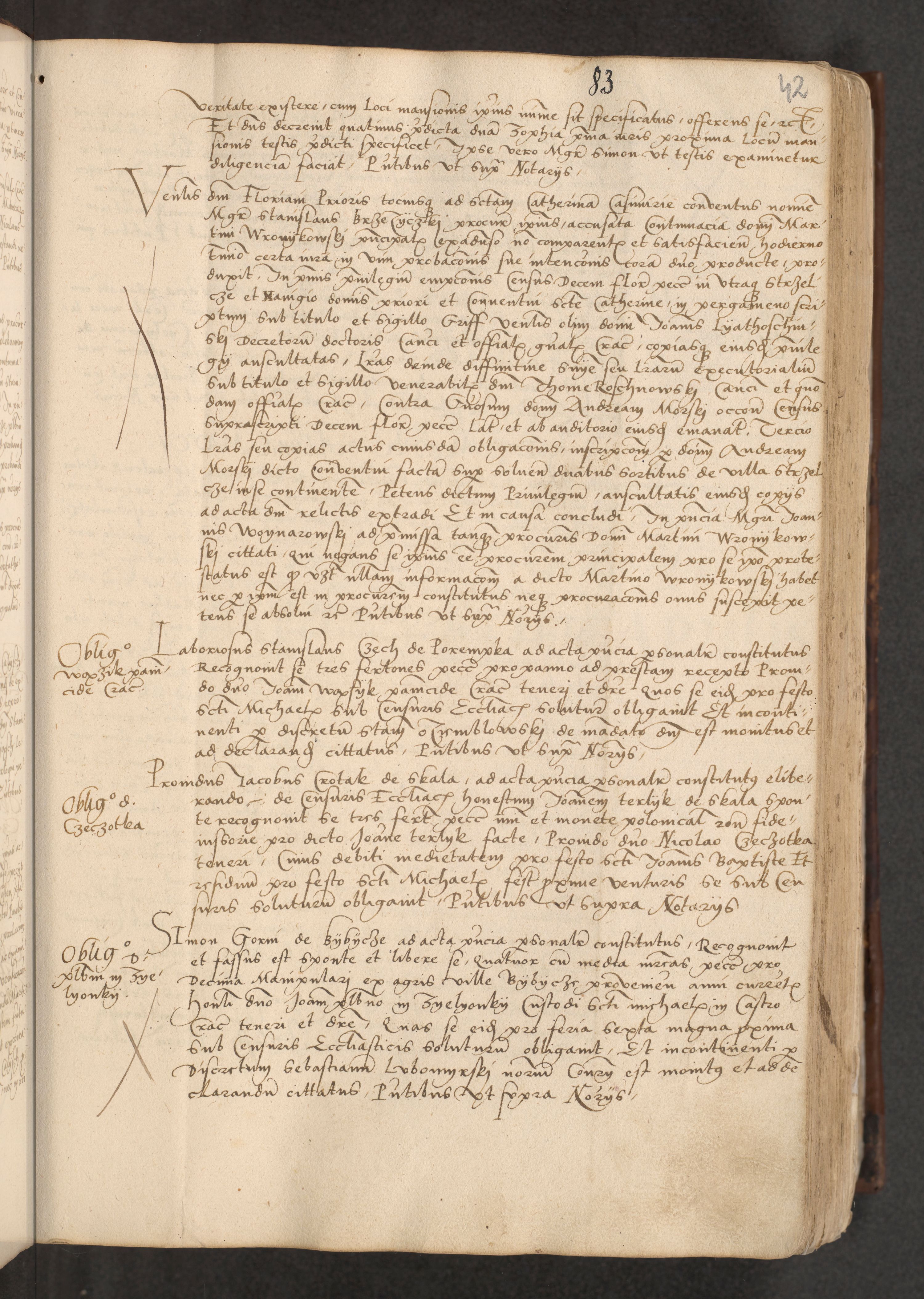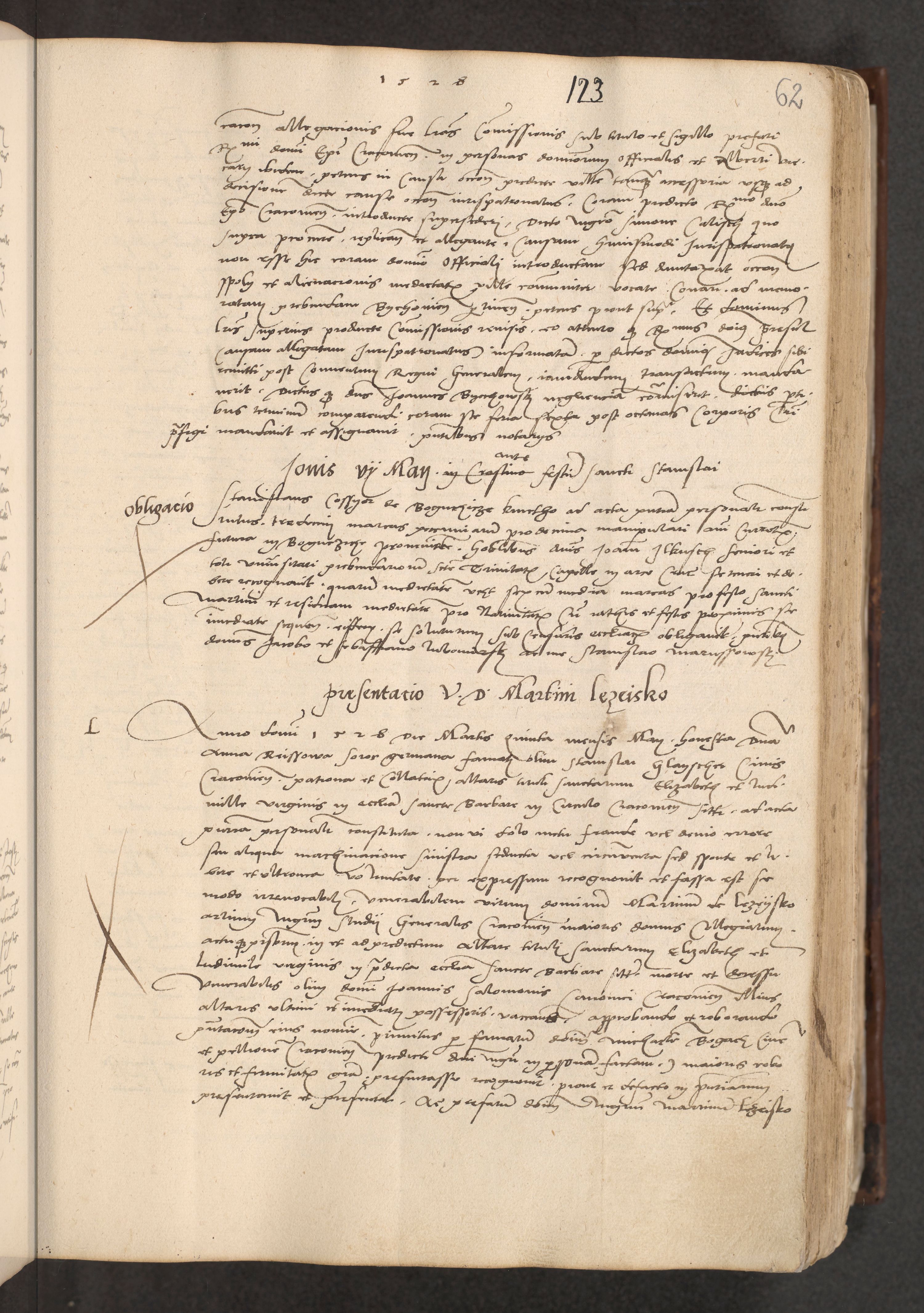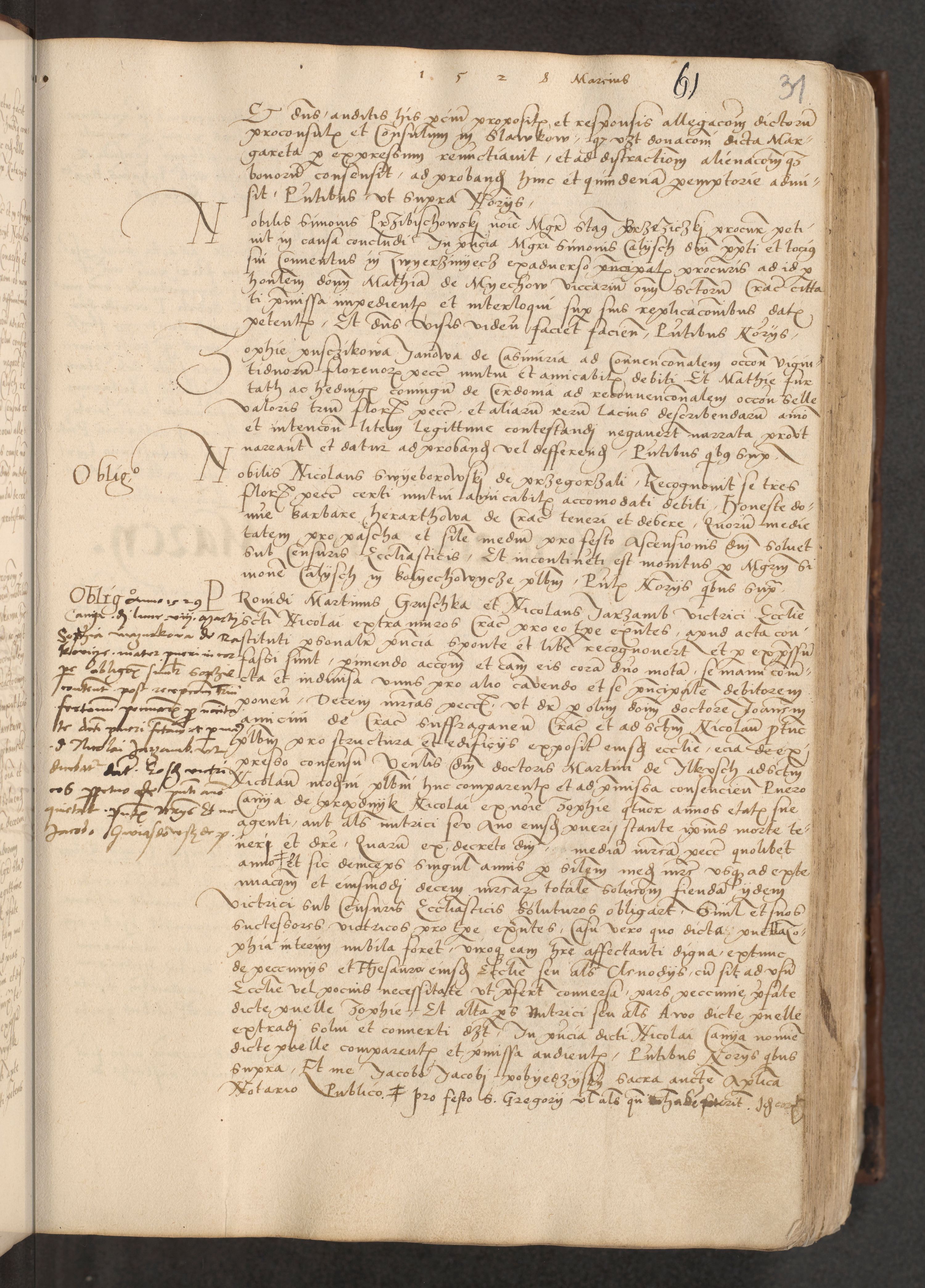 INRI. Acta actorum, obligacionum et sentenciarum tam interlocutoriarum quam diffinitivarum coram reverendo patre ac egregio viro domino Jacobo Erciss[o]wski decretorum doctorem, canonico et officiali generali Cracoviensi ad annum Domini 1528, indicionem primam, pontificatus sanctissimi in Christo patris et domini domini Clementis divina probidendcia pape seprtimi, annum quintum, per Stanislaum de Mordi legalem consistorii notarium omine felici inchoantur