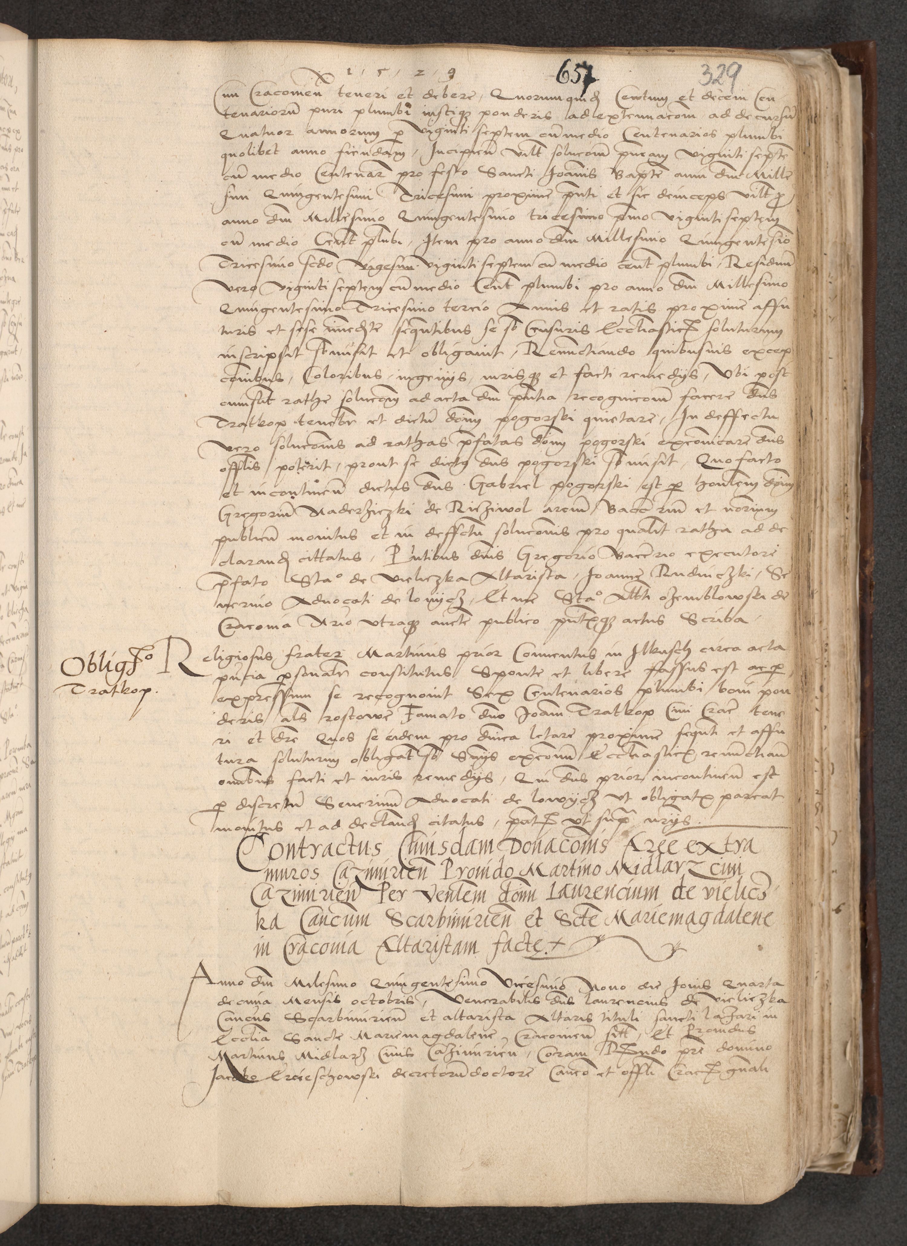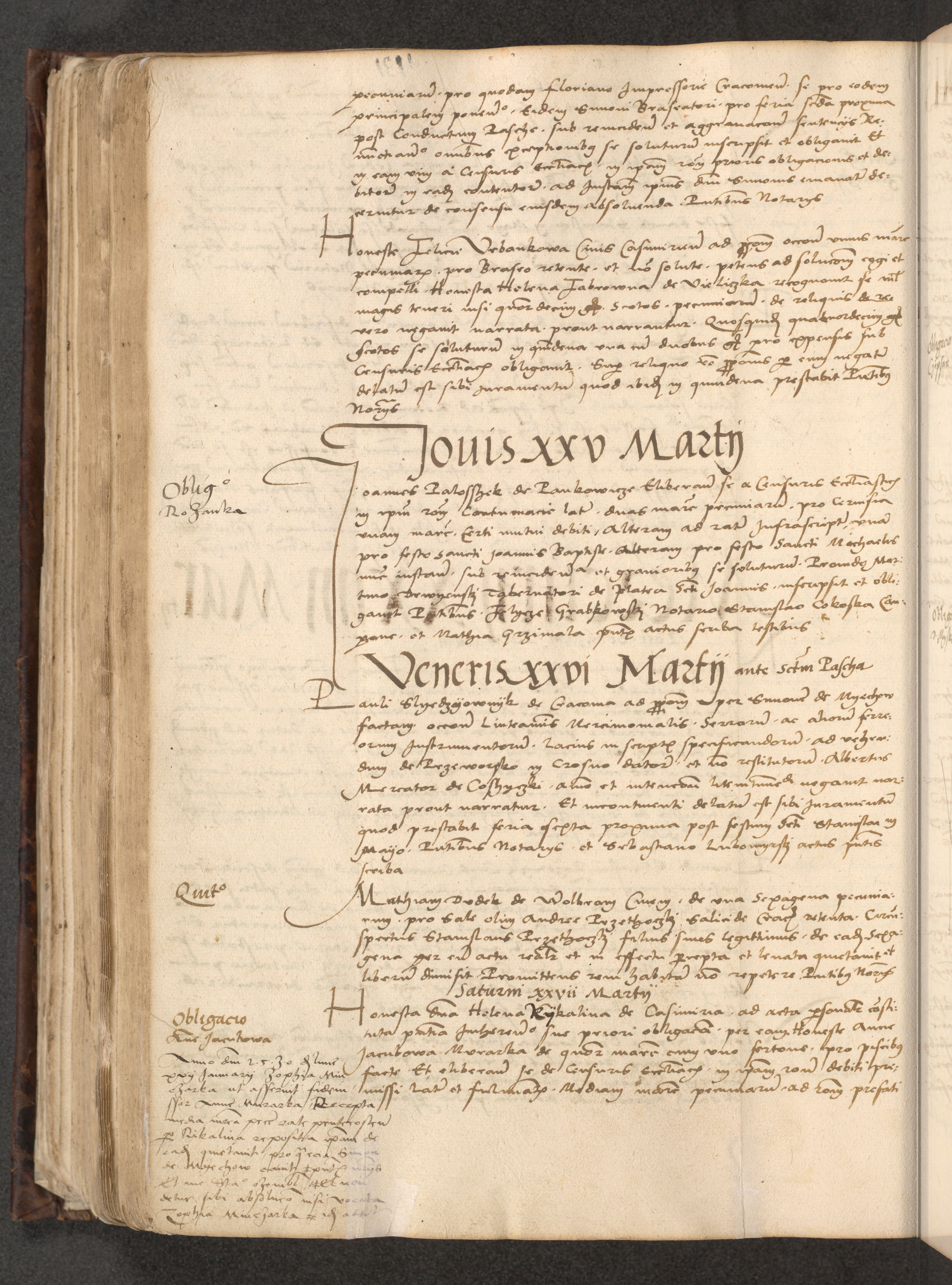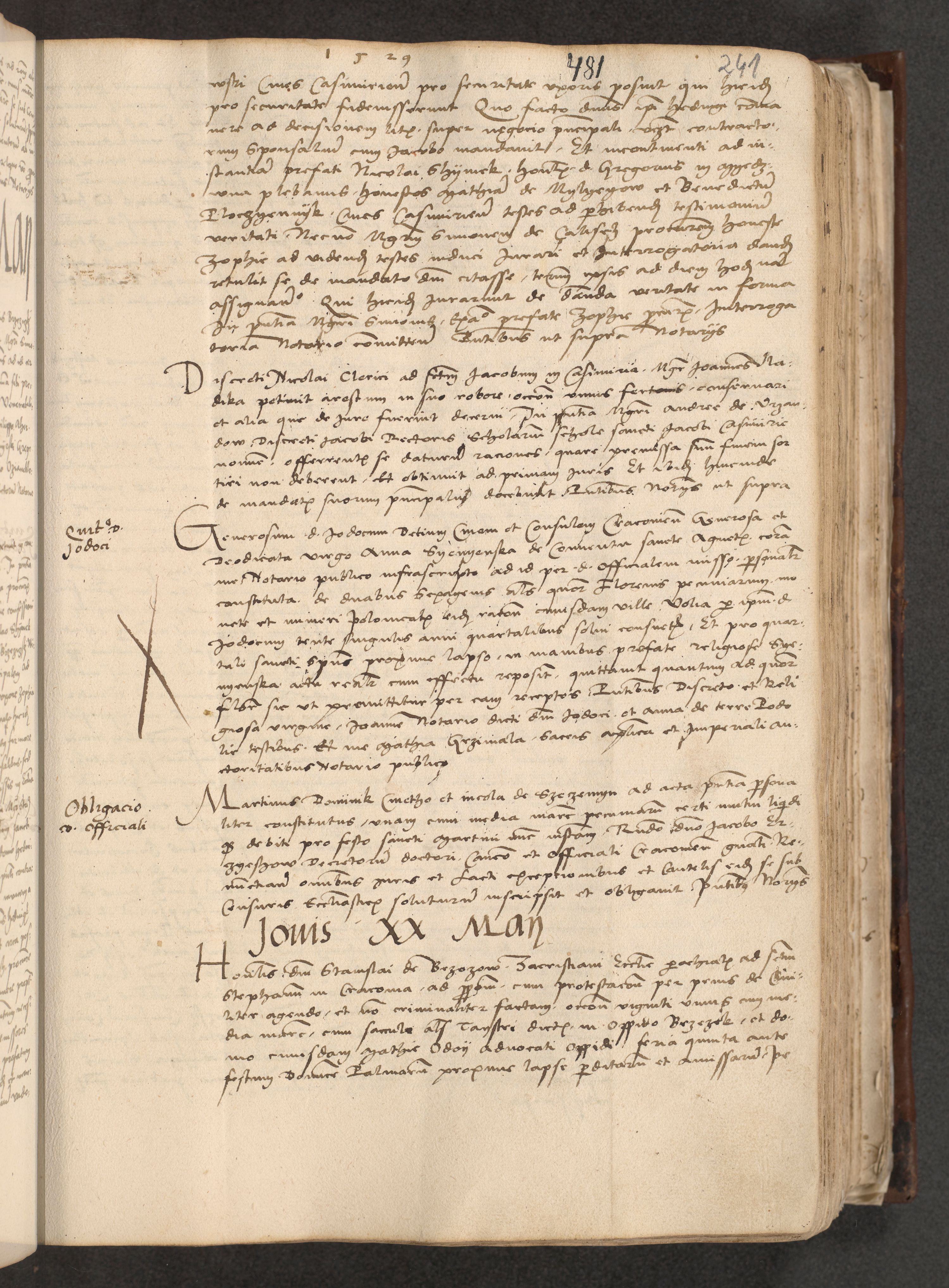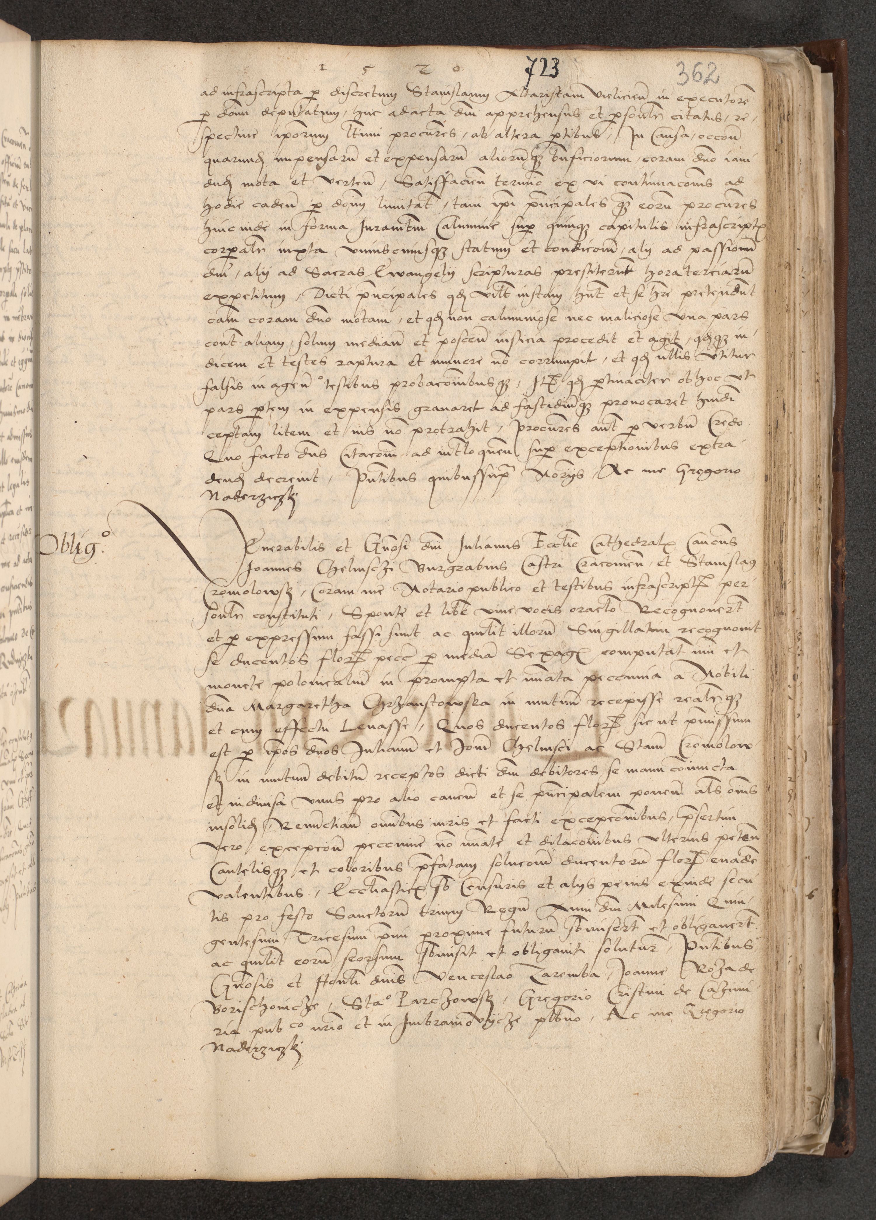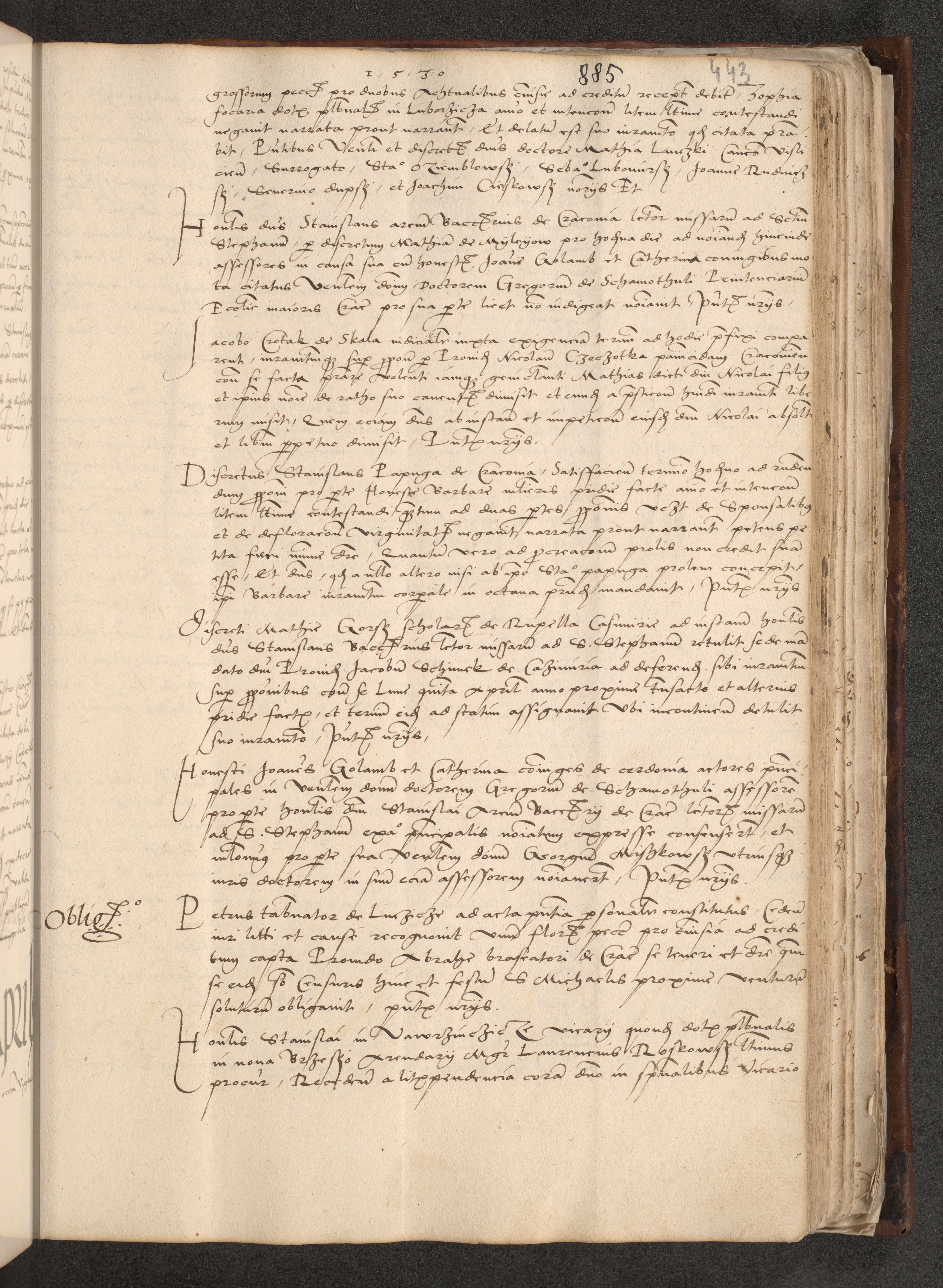 INRI. Acta actorum, obligacionum et sentenciarum tam interlocutoriarum quam diffinitivarum coram reverendo patre ac egregio viro domino Jacobo Erciss[o]wski decretorum doctorem, canonico et officiali generali Cracoviensi ad annum Domini 1528, indicionem primam, pontificatus sanctissimi in Christo patris et domini domini Clementis divina probidendcia pape seprtimi, annum quintum, per Stanislaum de Mordi legalem consistorii notarium omine felici inchoantur
