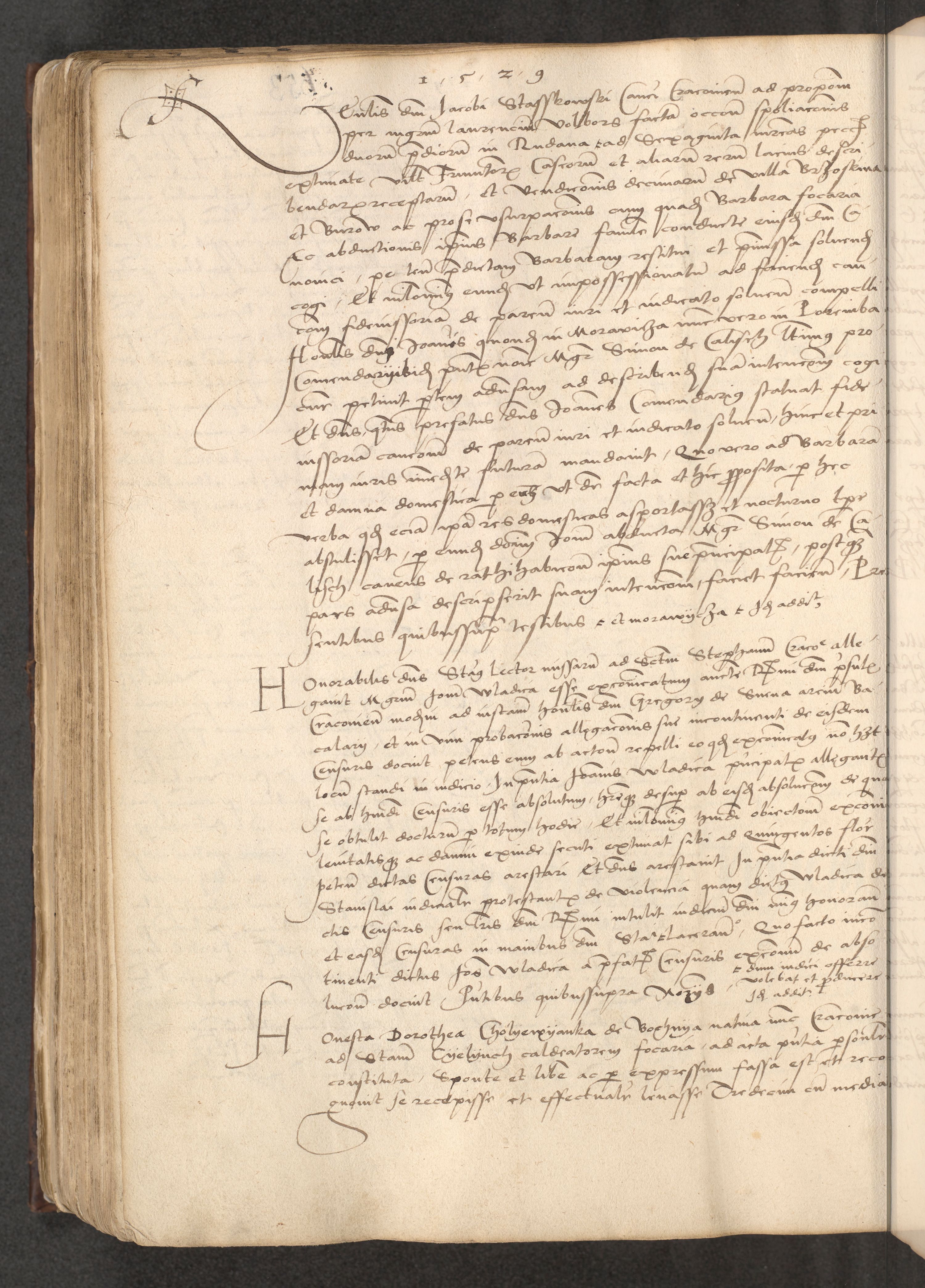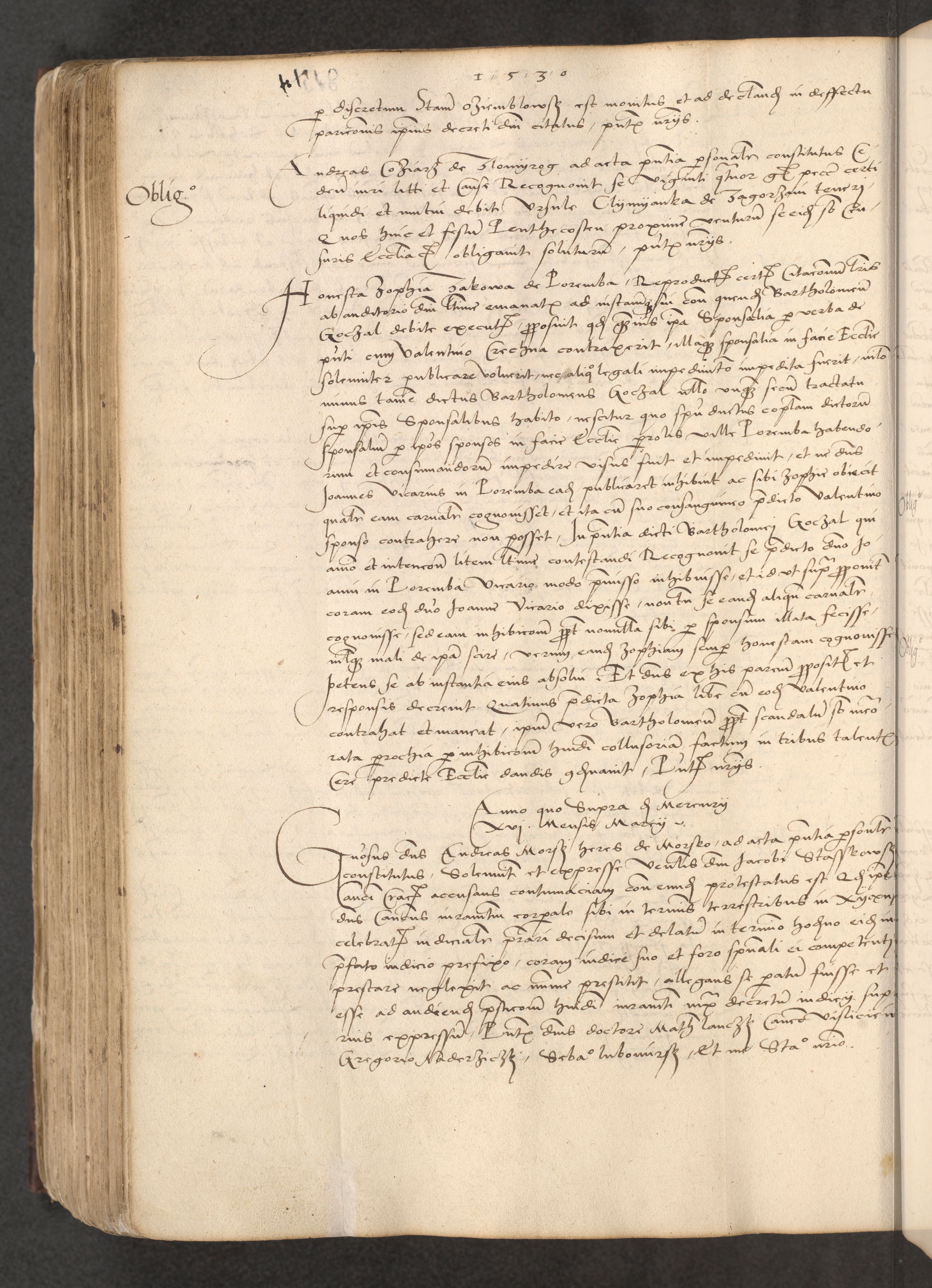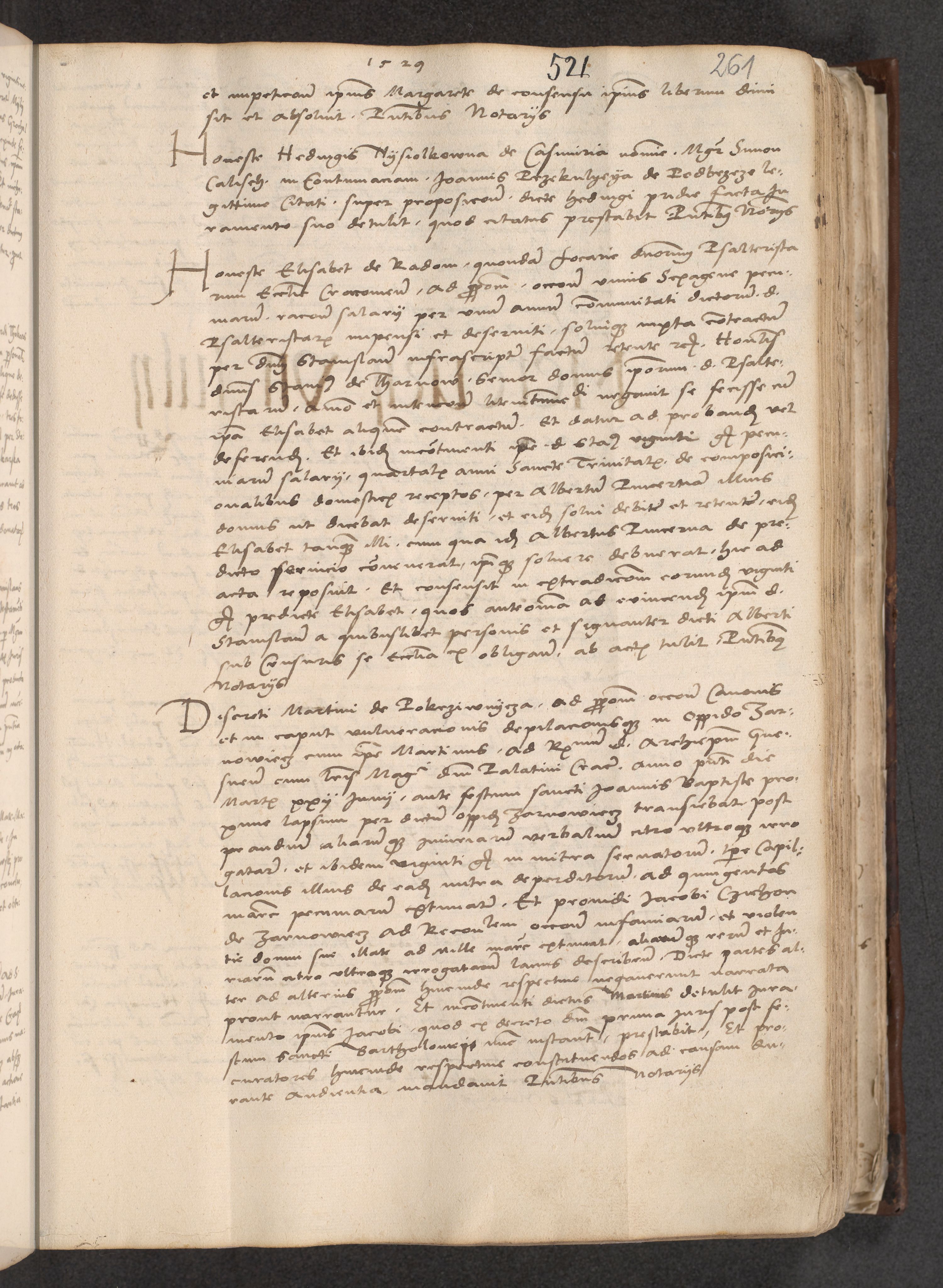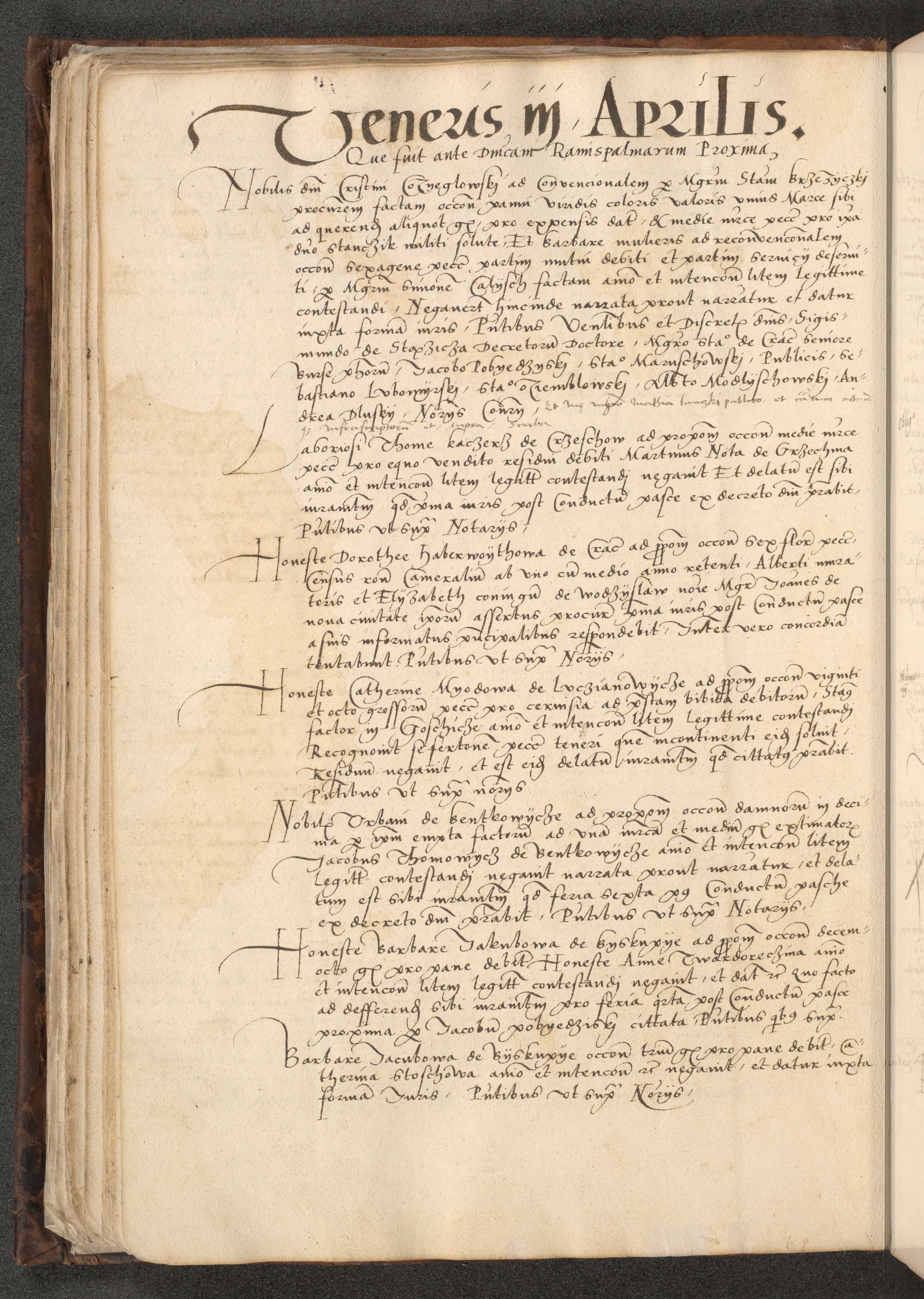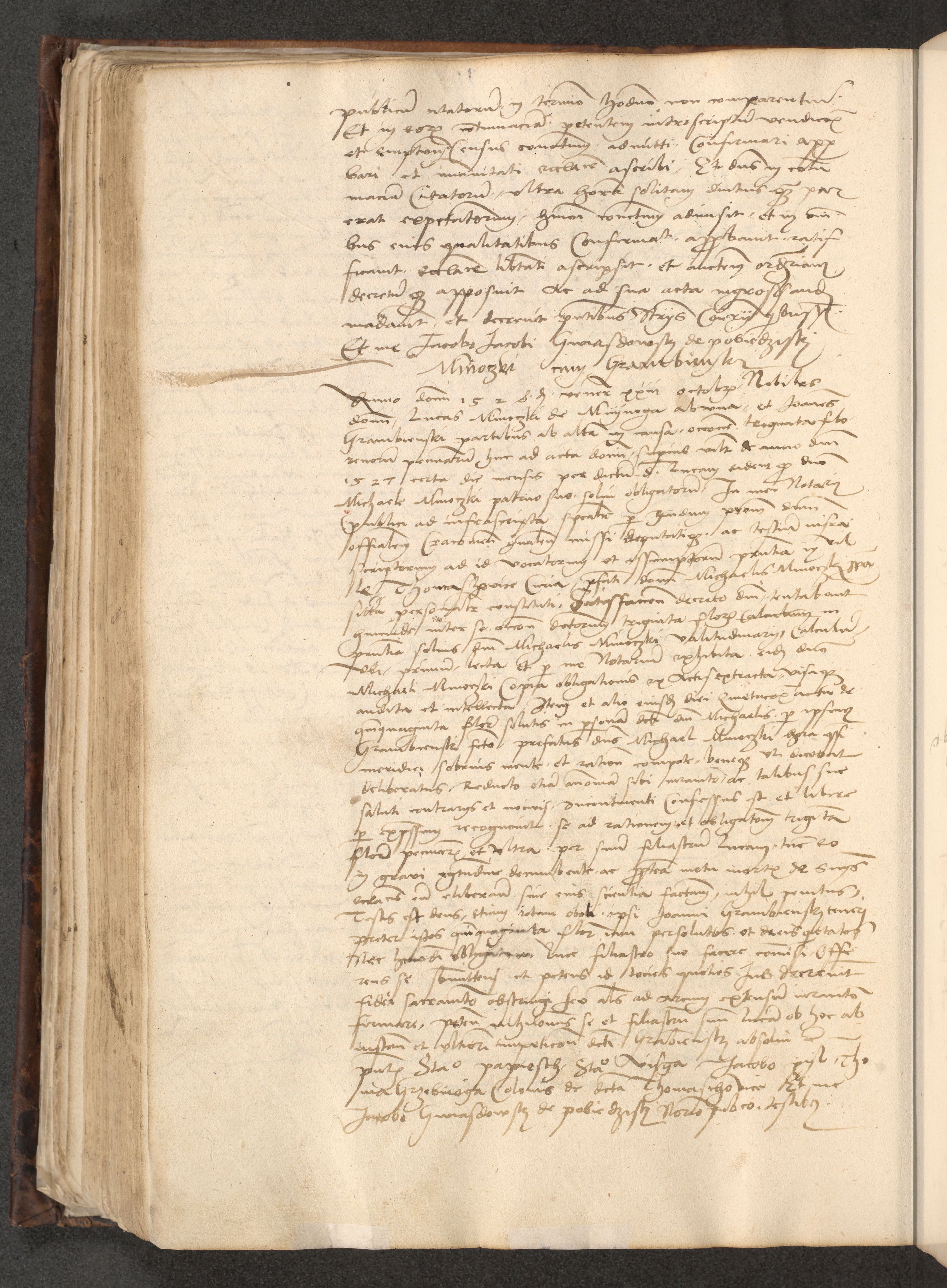 INRI. Acta actorum, obligacionum et sentenciarum tam interlocutoriarum quam diffinitivarum coram reverendo patre ac egregio viro domino Jacobo Erciss[o]wski decretorum doctorem, canonico et officiali generali Cracoviensi ad annum Domini 1528, indicionem primam, pontificatus sanctissimi in Christo patris et domini domini Clementis divina probidendcia pape seprtimi, annum quintum, per Stanislaum de Mordi legalem consistorii notarium omine felici inchoantur