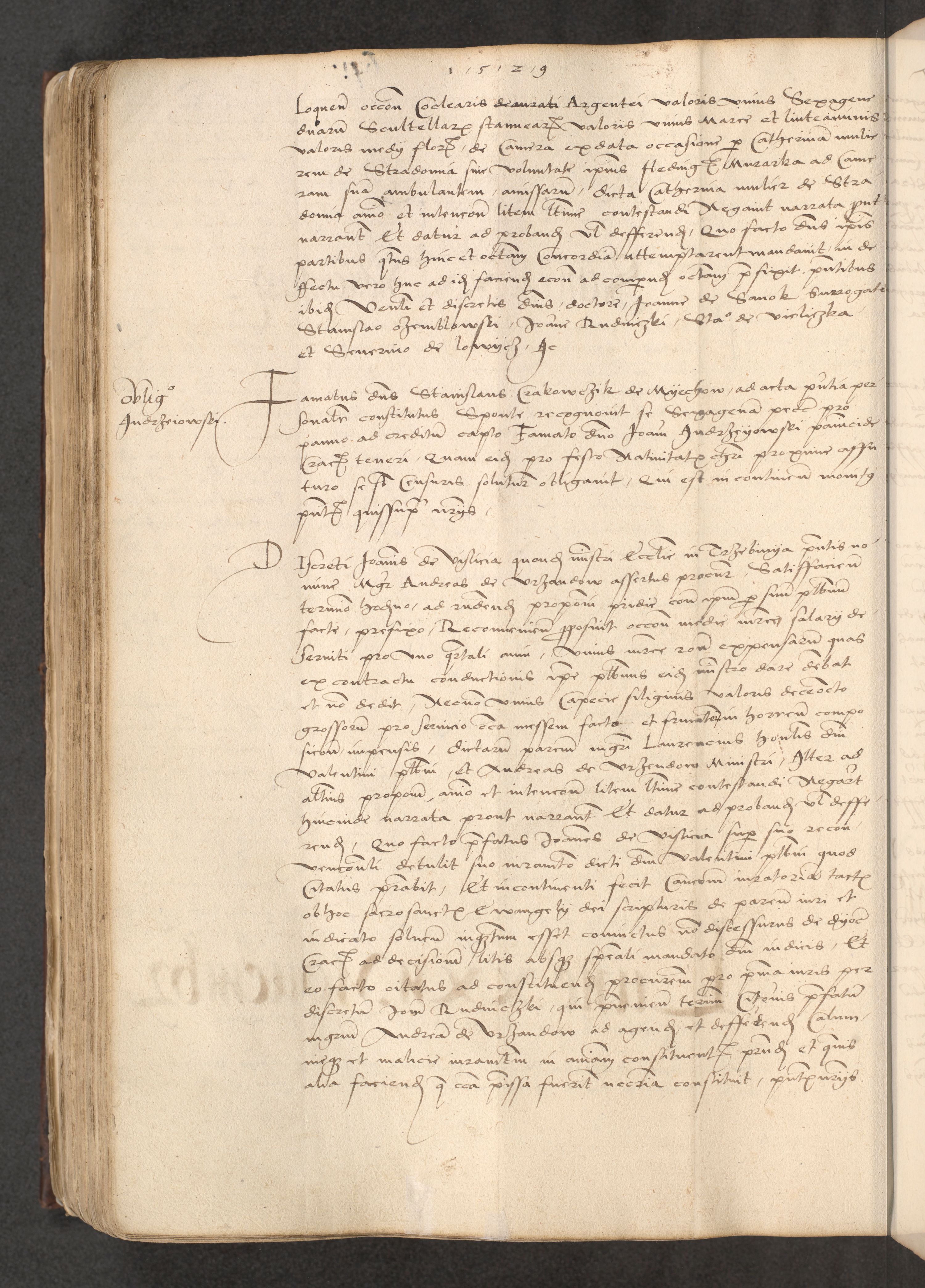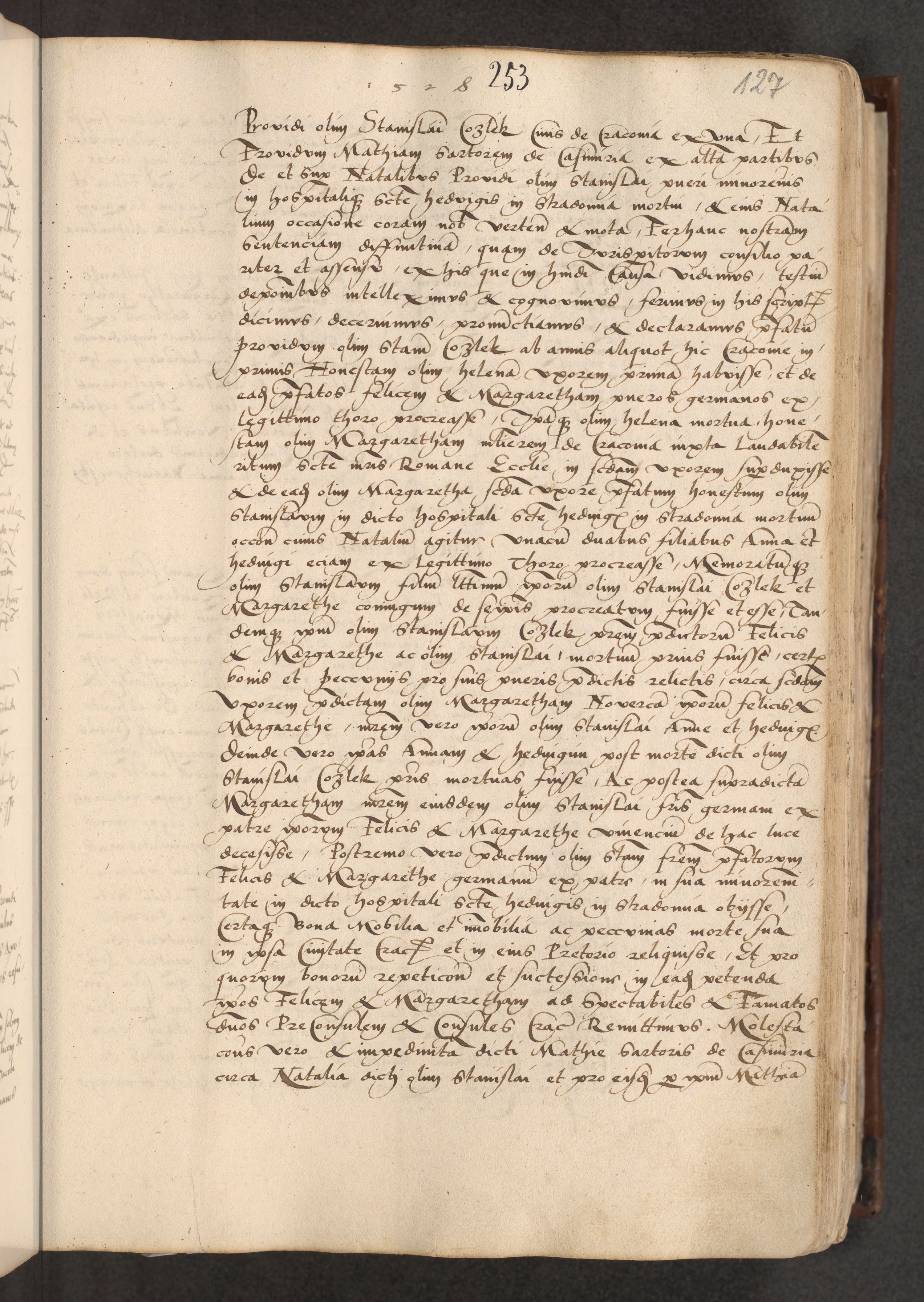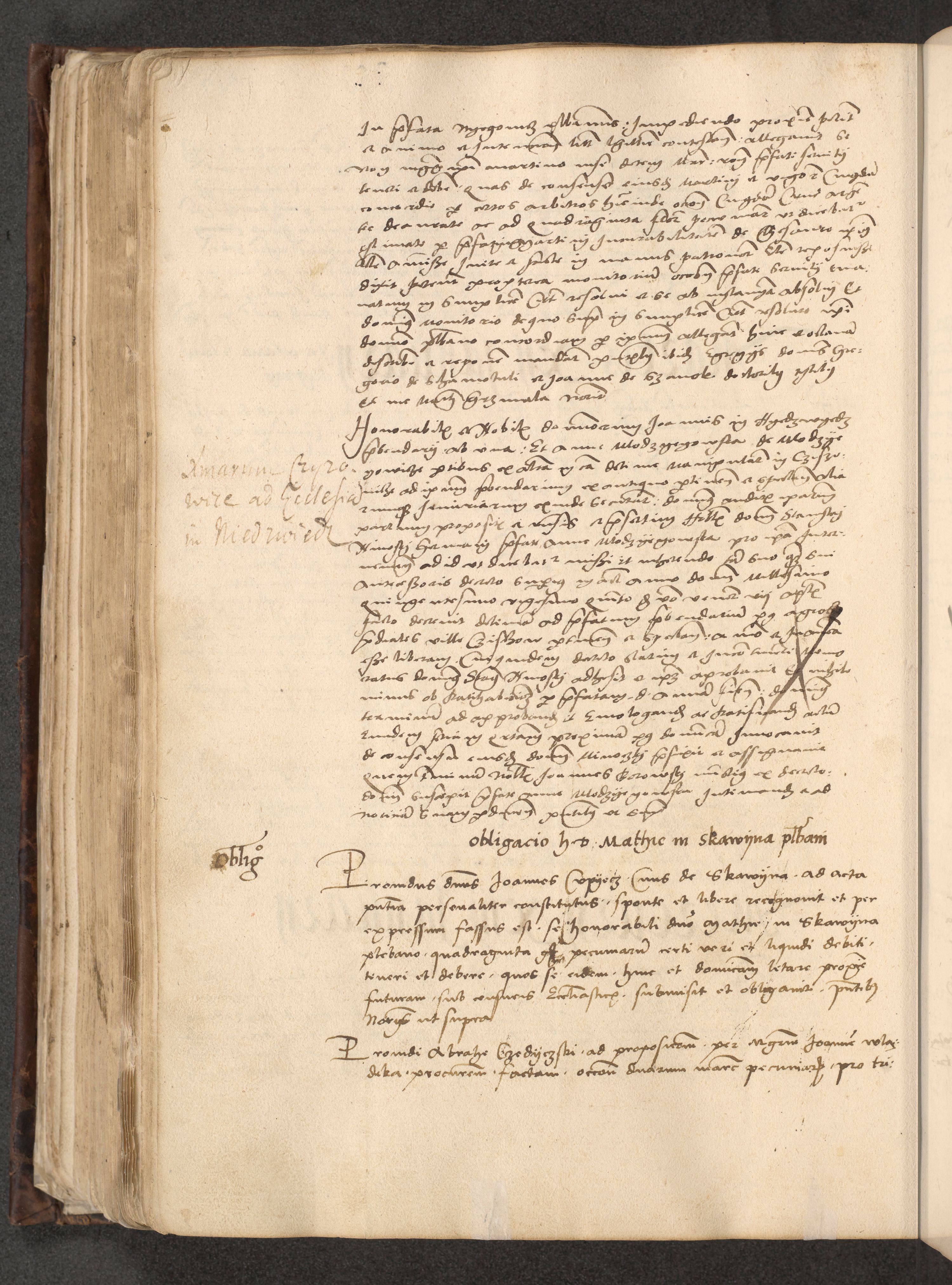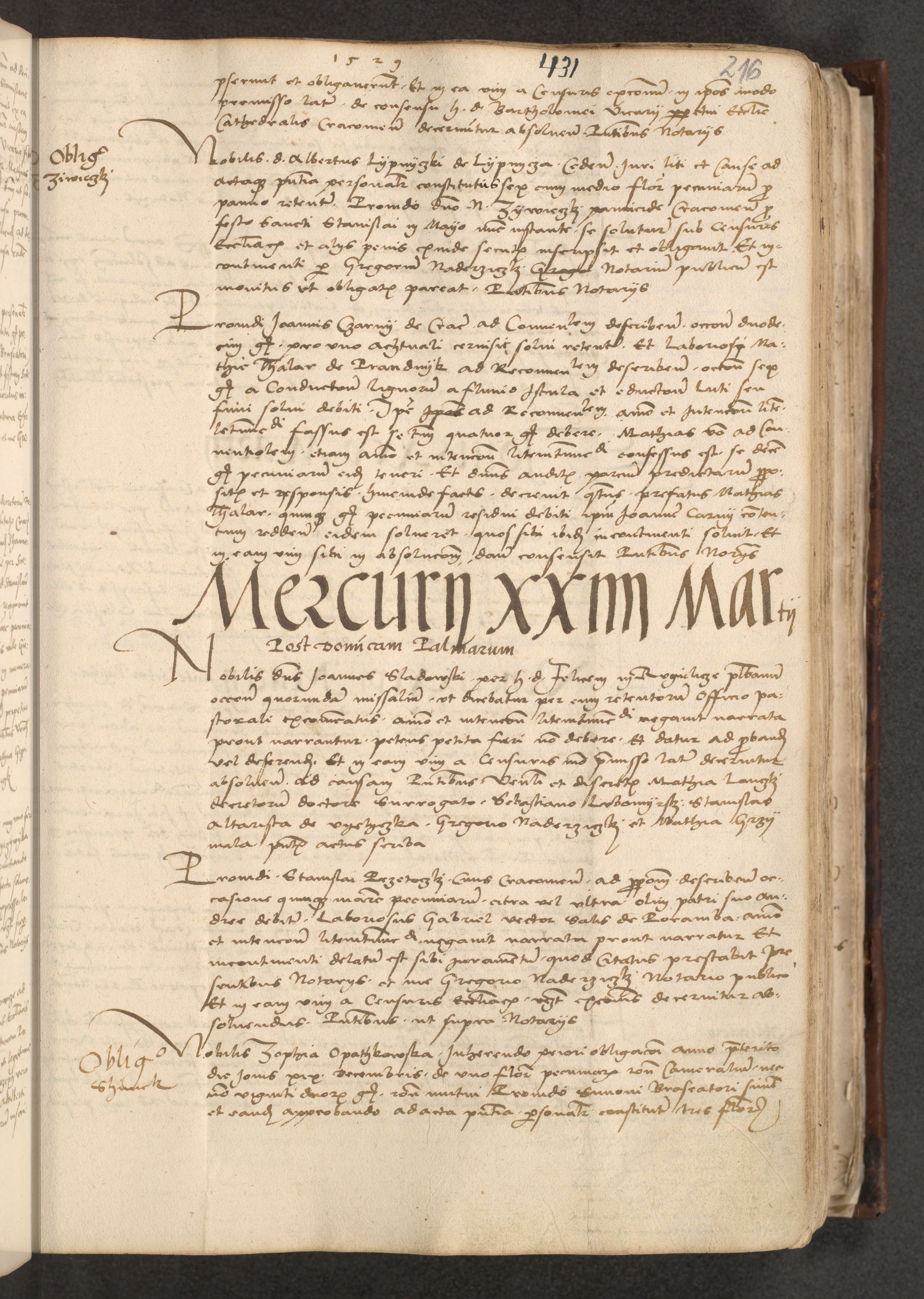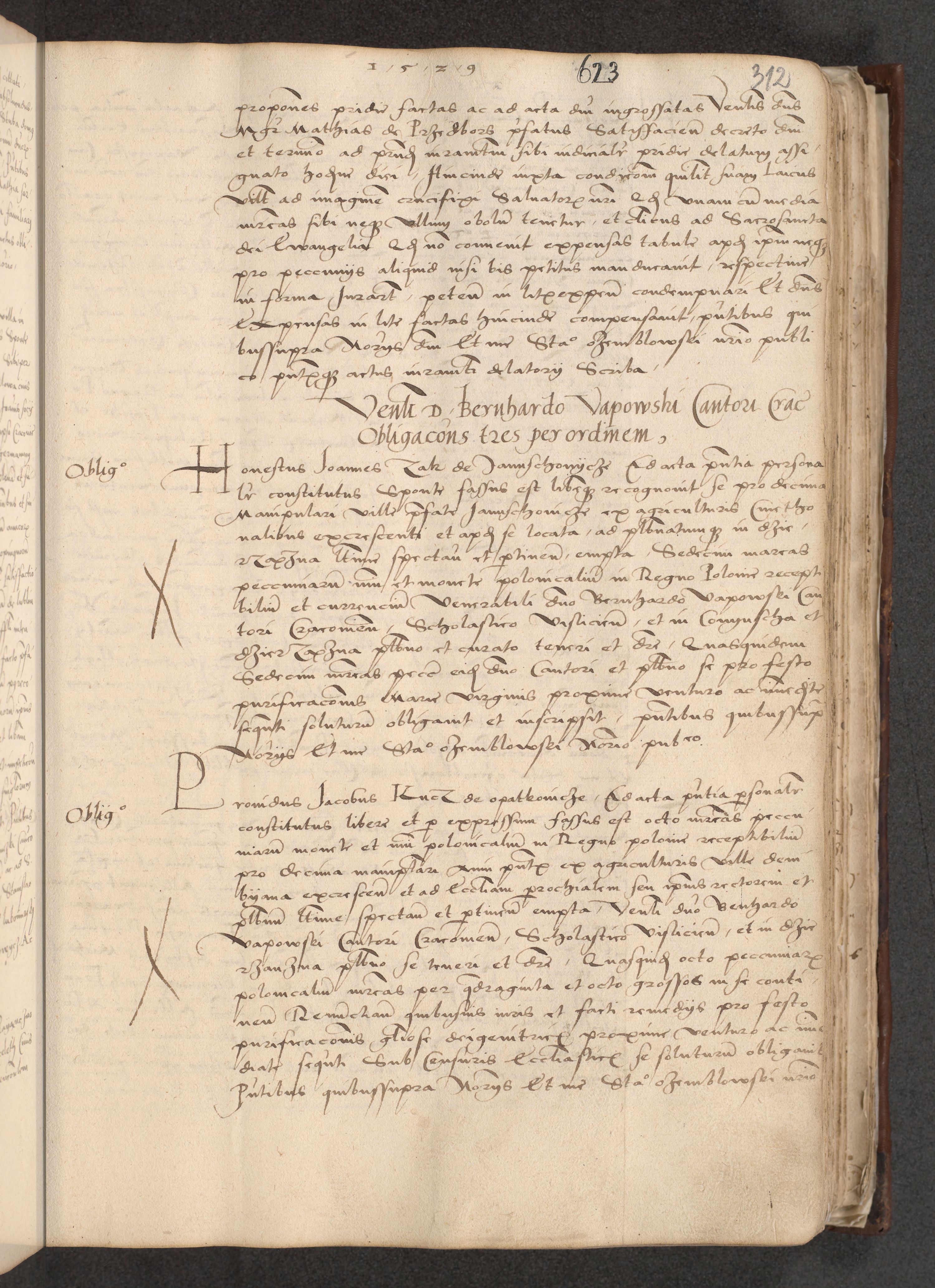 INRI. Acta actorum, obligacionum et sentenciarum tam interlocutoriarum quam diffinitivarum coram reverendo patre ac egregio viro domino Jacobo Erciss[o]wski decretorum doctorem, canonico et officiali generali Cracoviensi ad annum Domini 1528, indicionem primam, pontificatus sanctissimi in Christo patris et domini domini Clementis divina probidendcia pape seprtimi, annum quintum, per Stanislaum de Mordi legalem consistorii notarium omine felici inchoantur