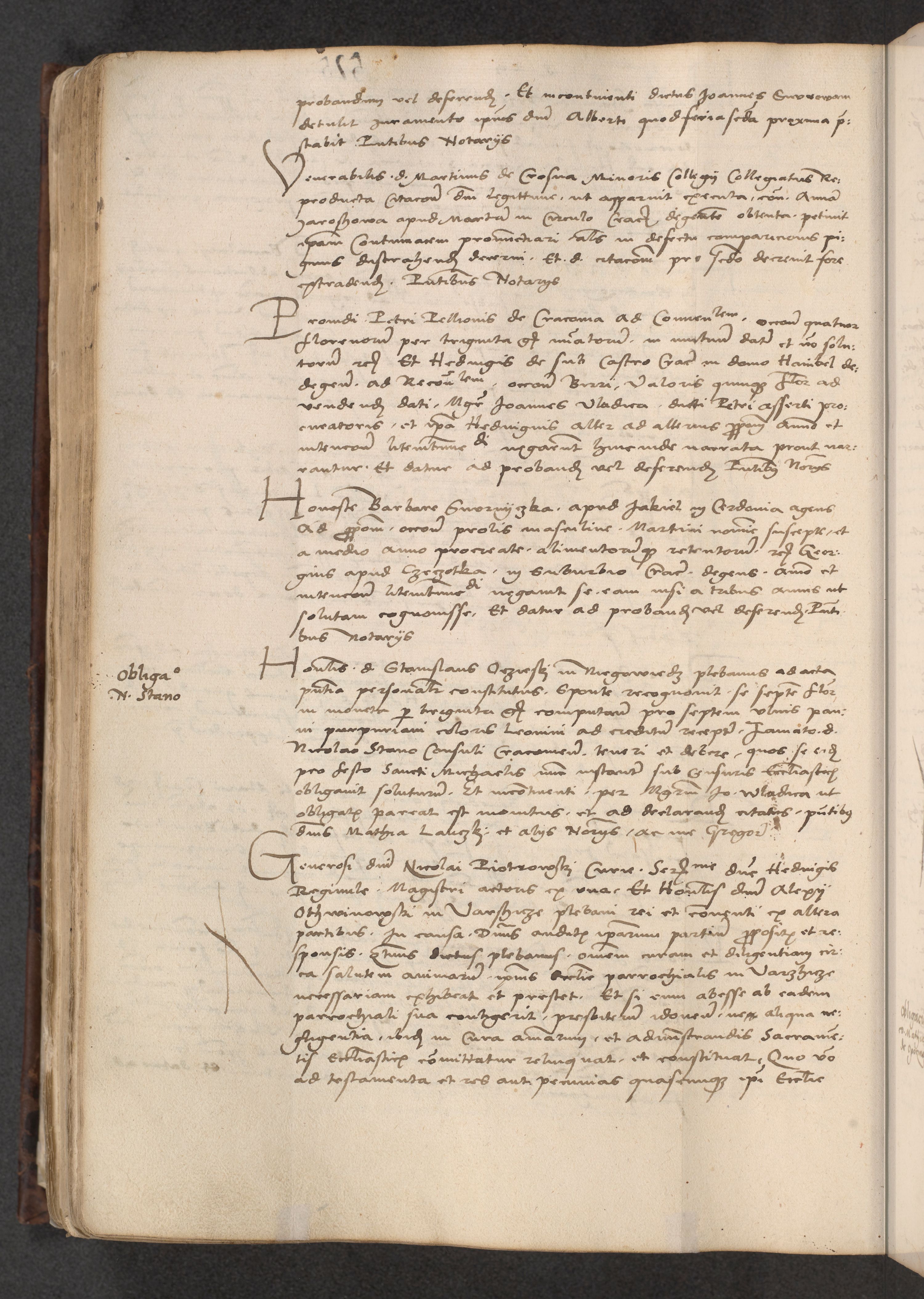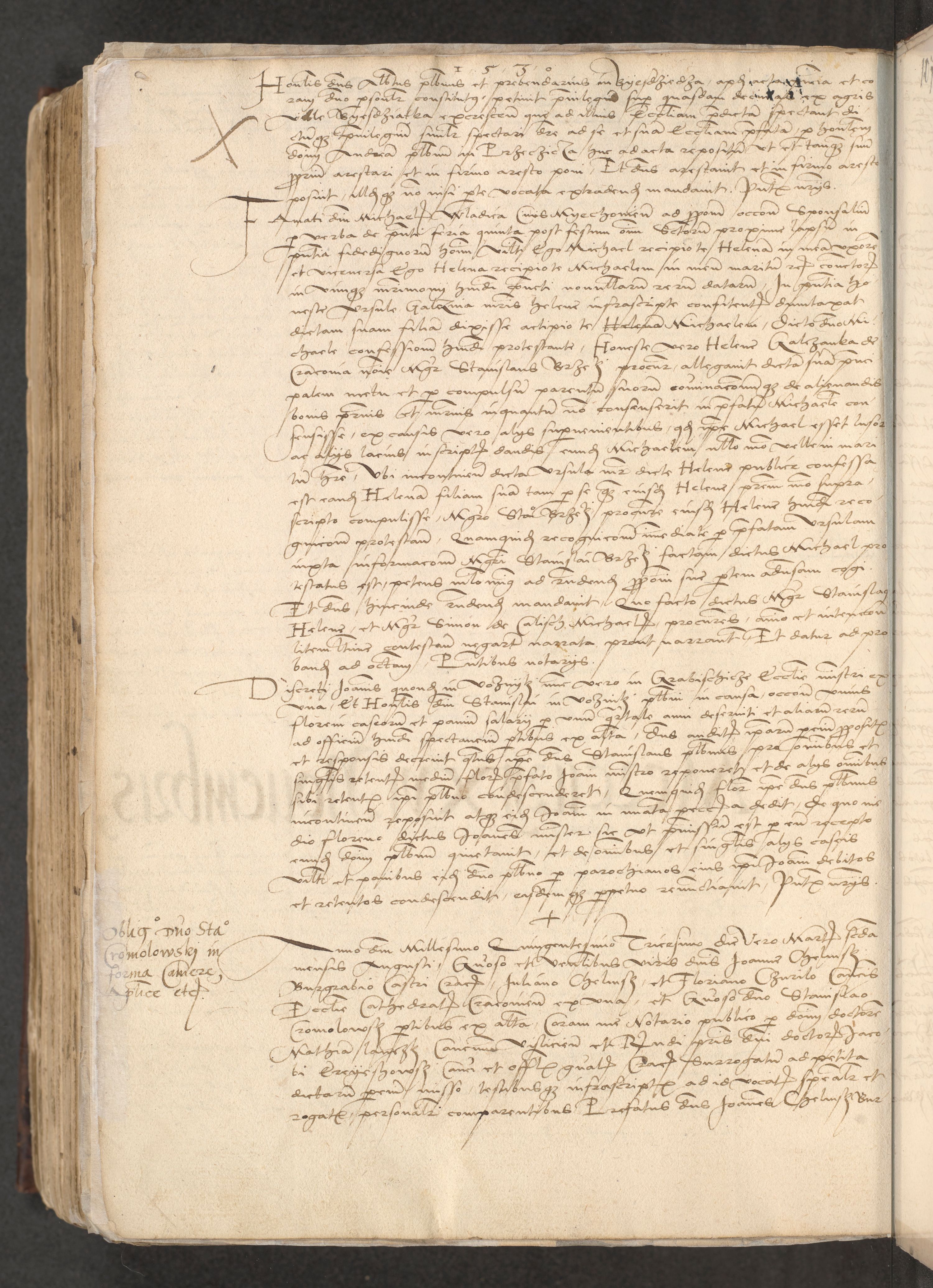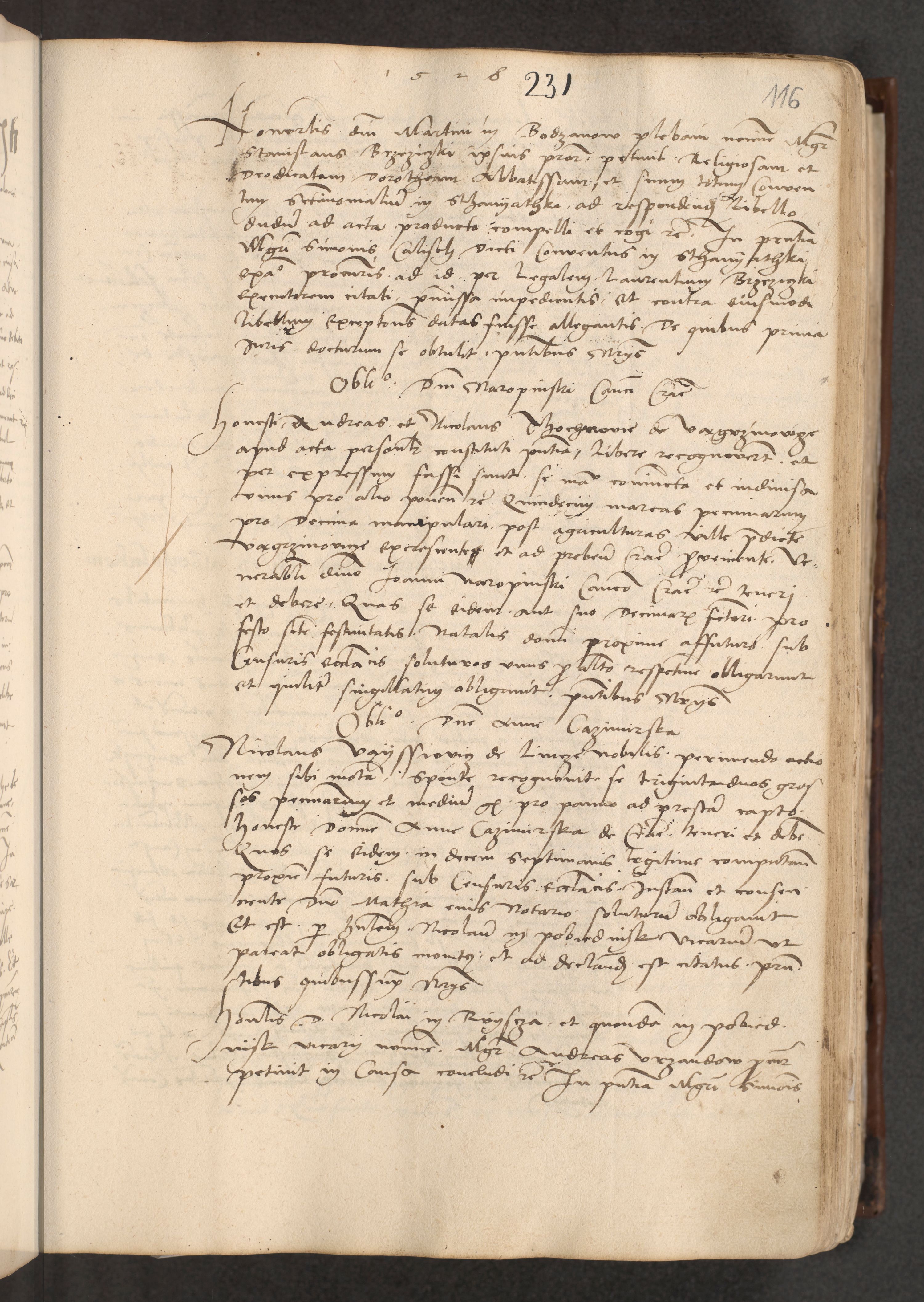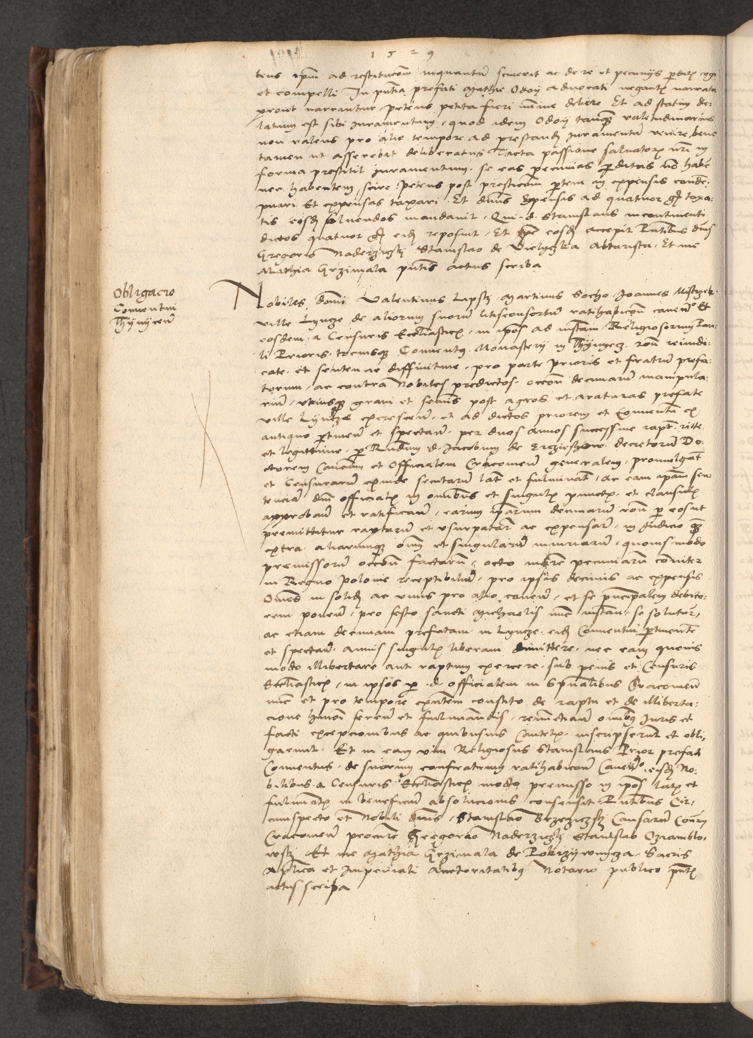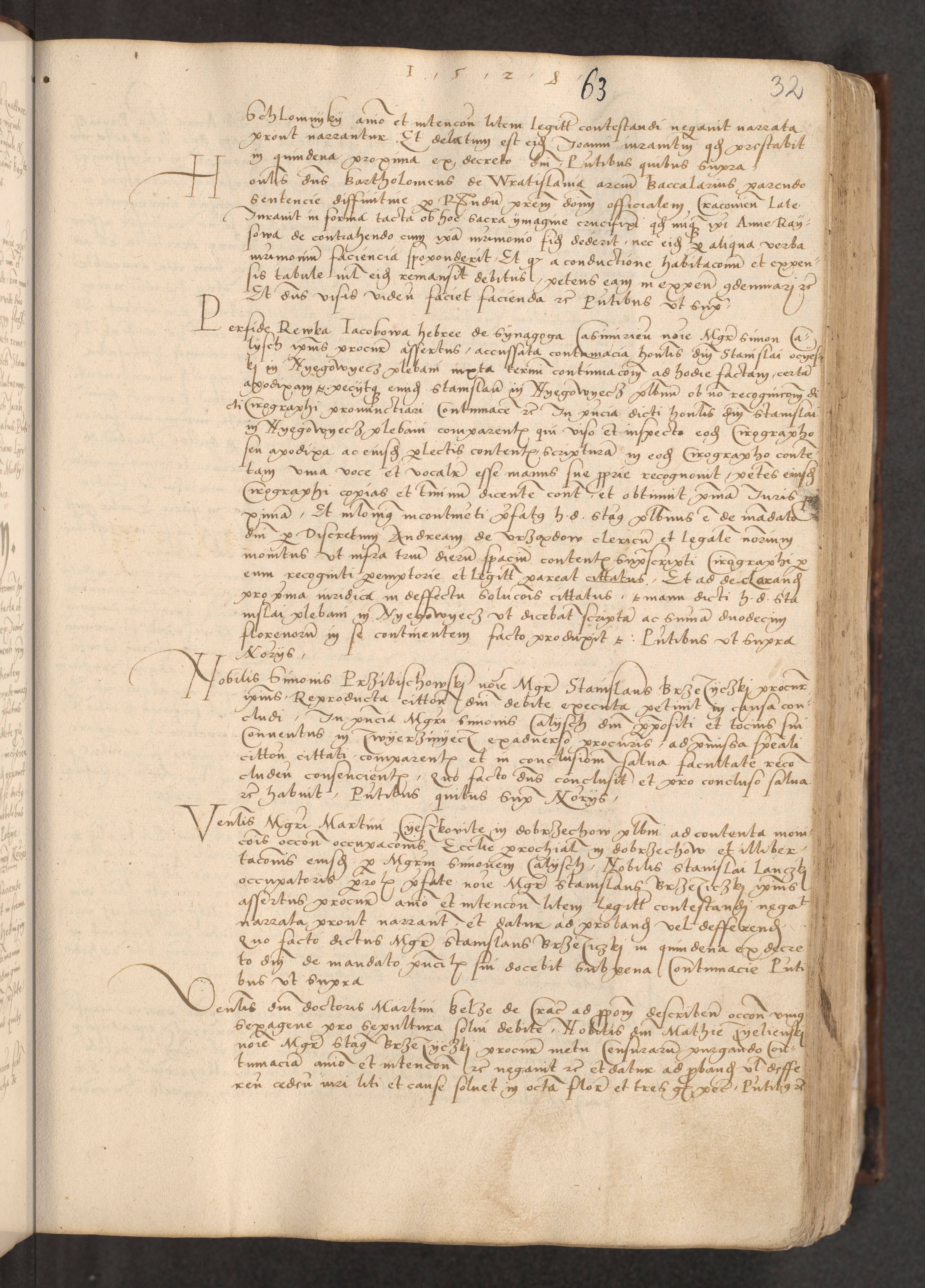 INRI. Acta actorum, obligacionum et sentenciarum tam interlocutoriarum quam diffinitivarum coram reverendo patre ac egregio viro domino Jacobo Erciss[o]wski decretorum doctorem, canonico et officiali generali Cracoviensi ad annum Domini 1528, indicionem primam, pontificatus sanctissimi in Christo patris et domini domini Clementis divina probidendcia pape seprtimi, annum quintum, per Stanislaum de Mordi legalem consistorii notarium omine felici inchoantur