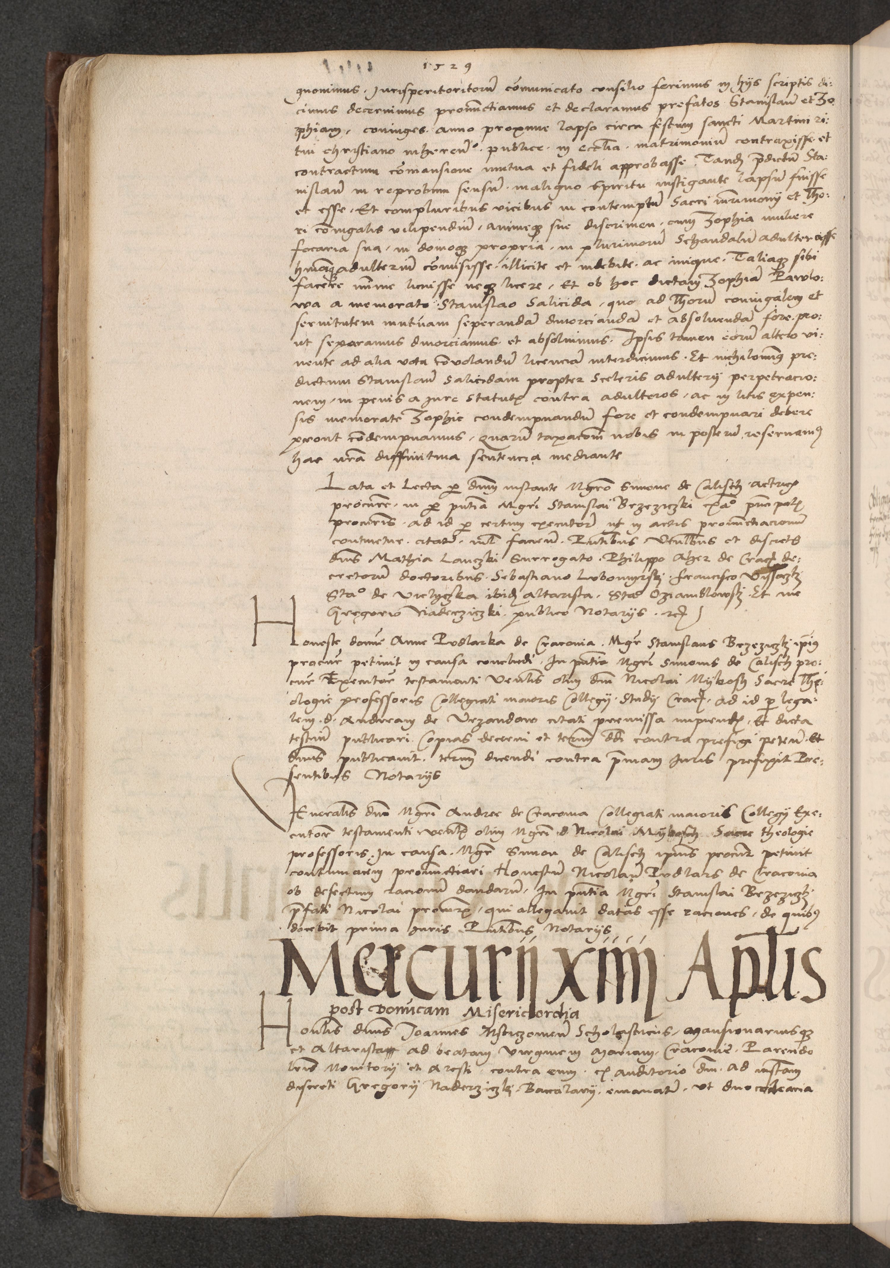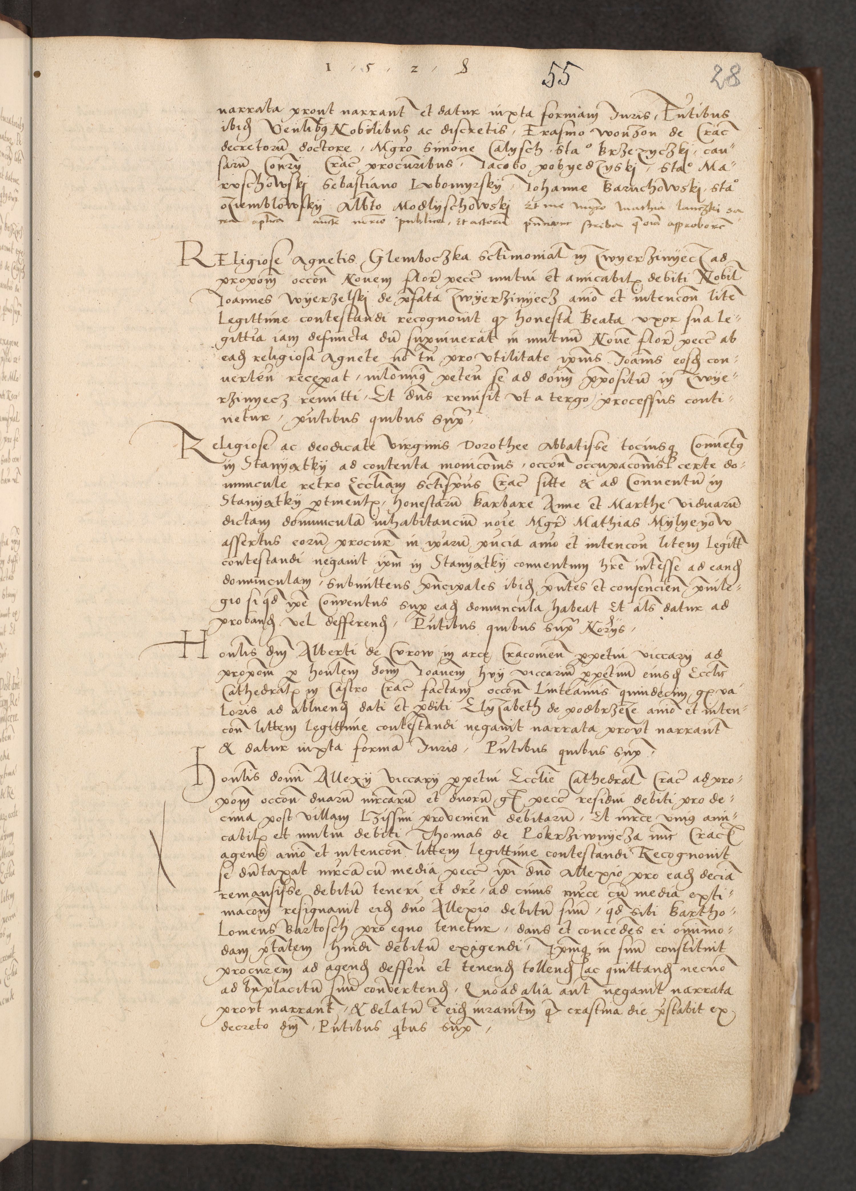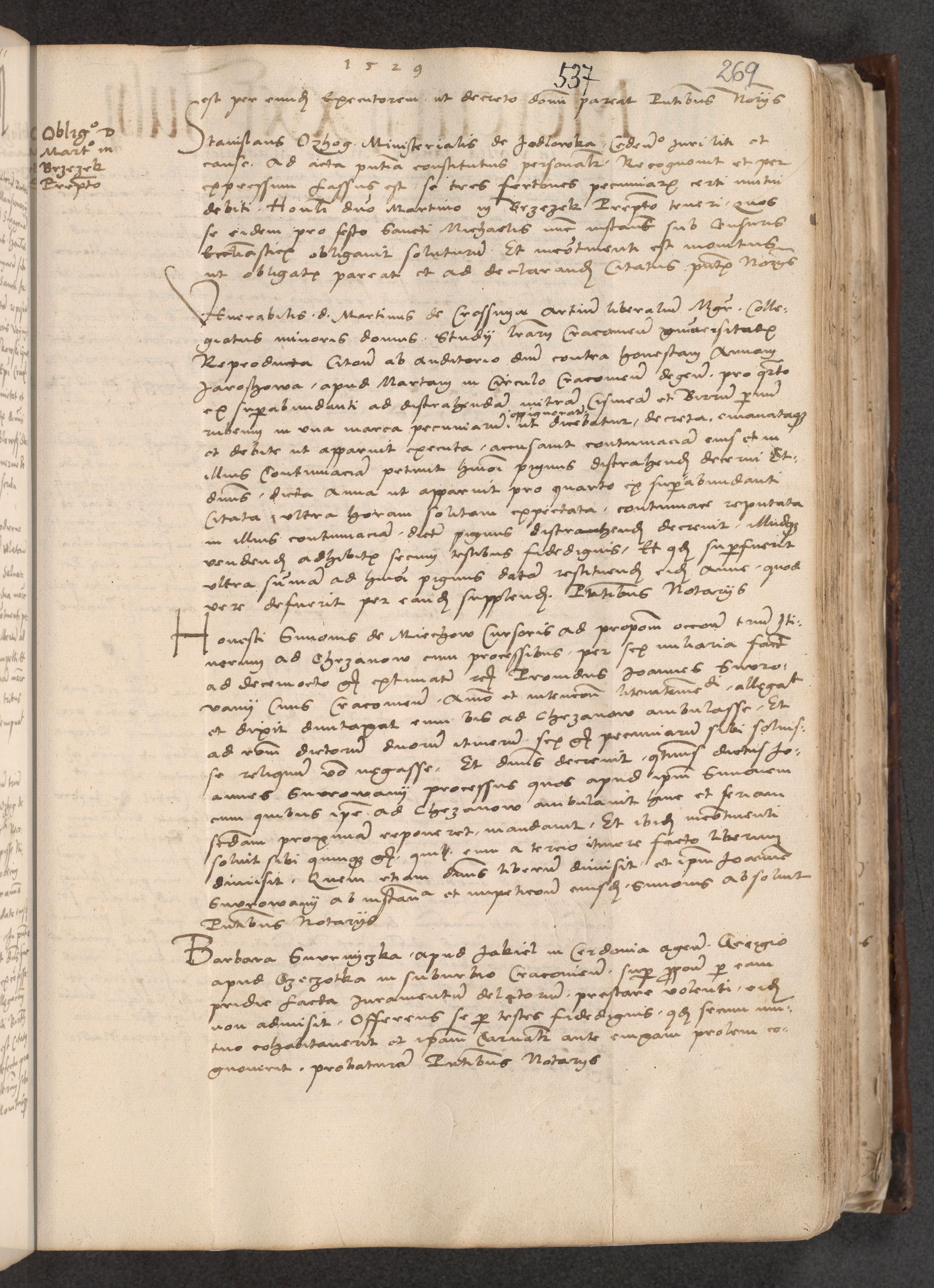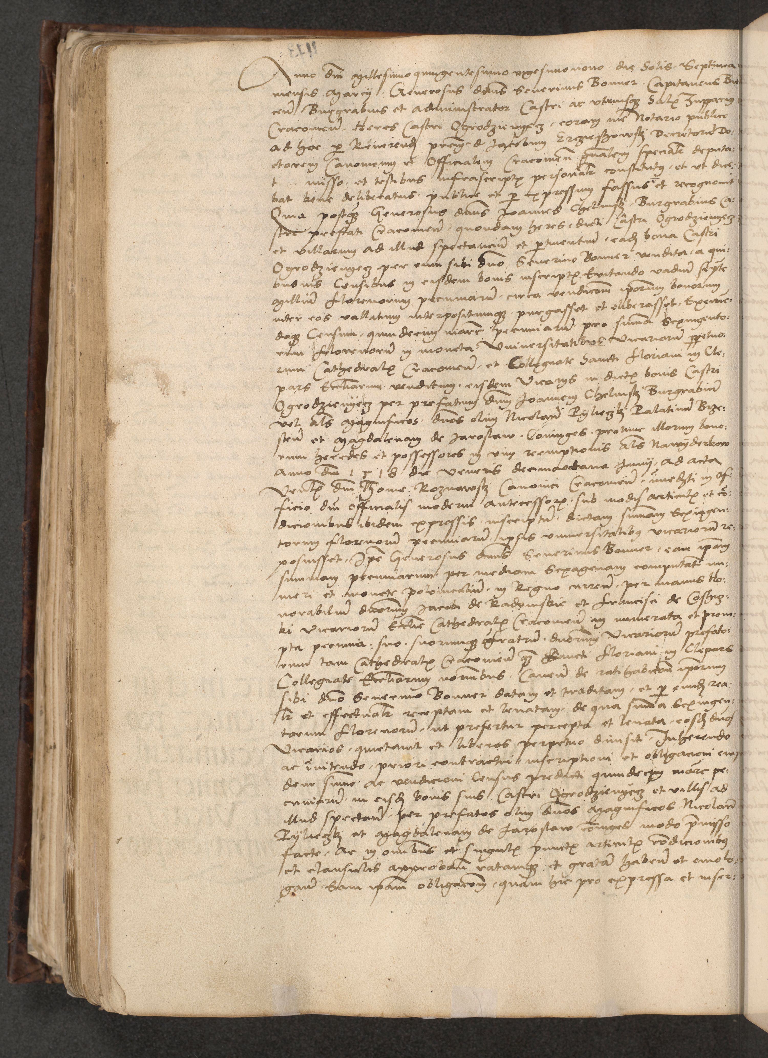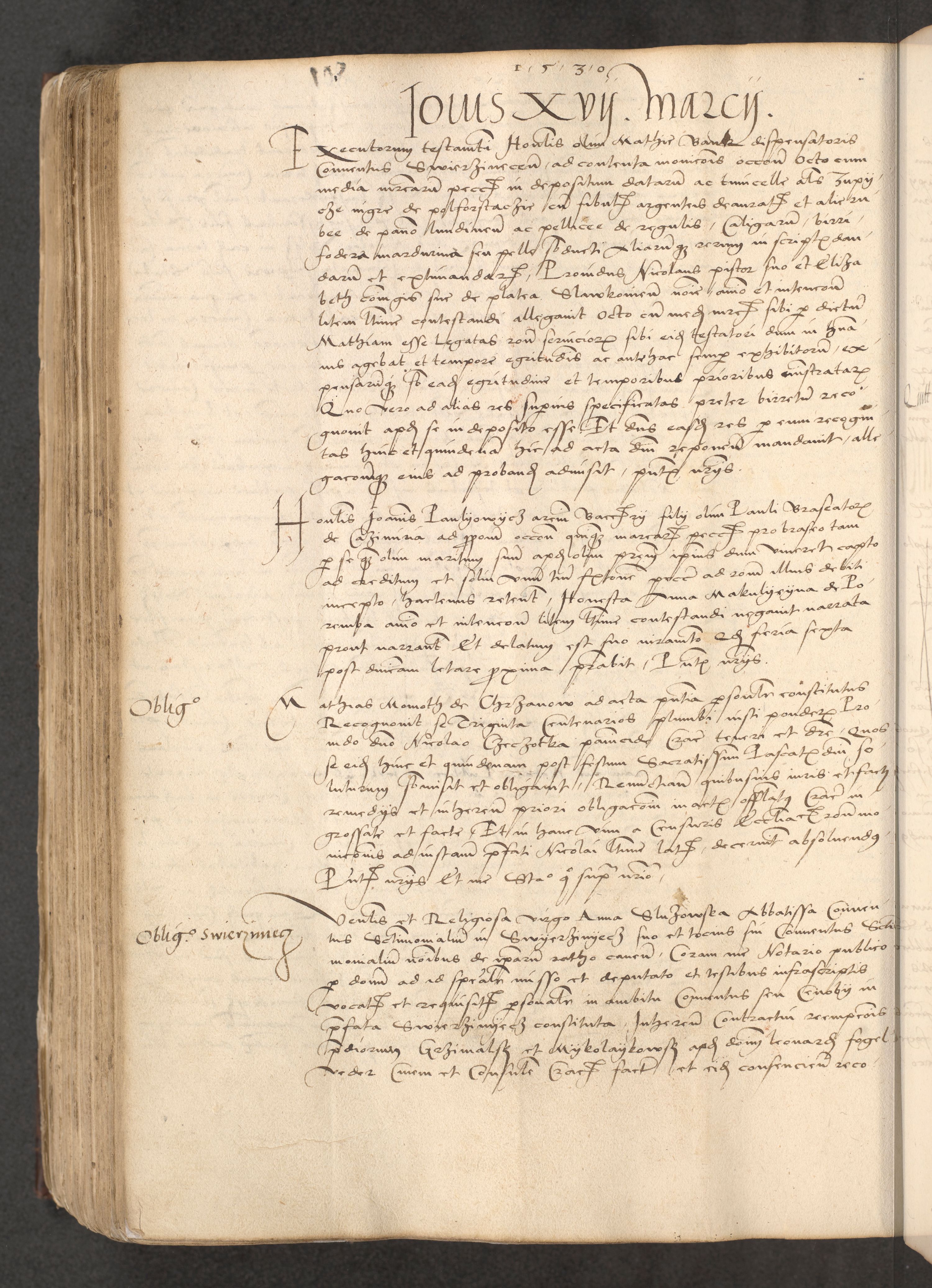 INRI. Acta actorum, obligacionum et sentenciarum tam interlocutoriarum quam diffinitivarum coram reverendo patre ac egregio viro domino Jacobo Erciss[o]wski decretorum doctorem, canonico et officiali generali Cracoviensi ad annum Domini 1528, indicionem primam, pontificatus sanctissimi in Christo patris et domini domini Clementis divina probidendcia pape seprtimi, annum quintum, per Stanislaum de Mordi legalem consistorii notarium omine felici inchoantur