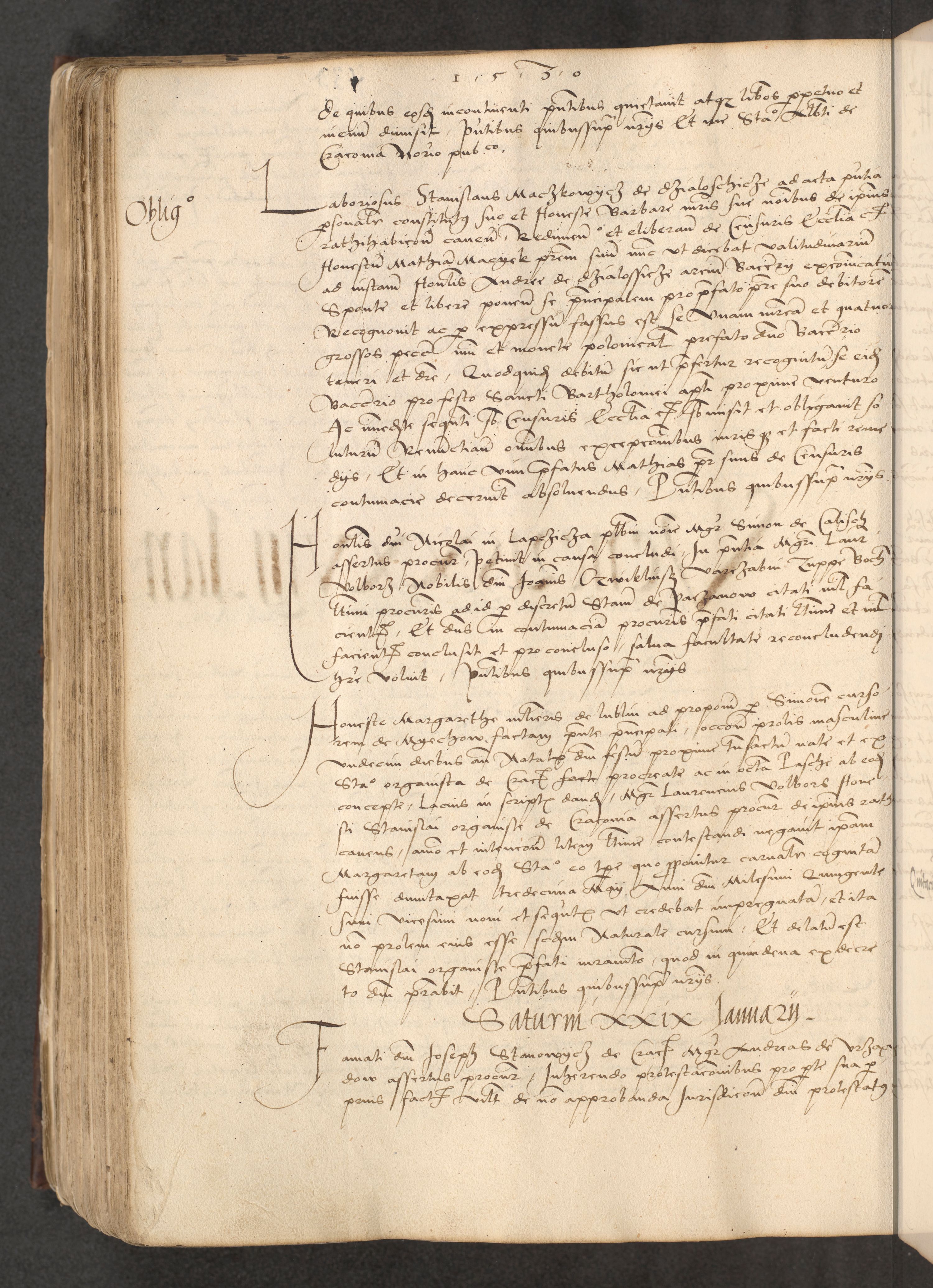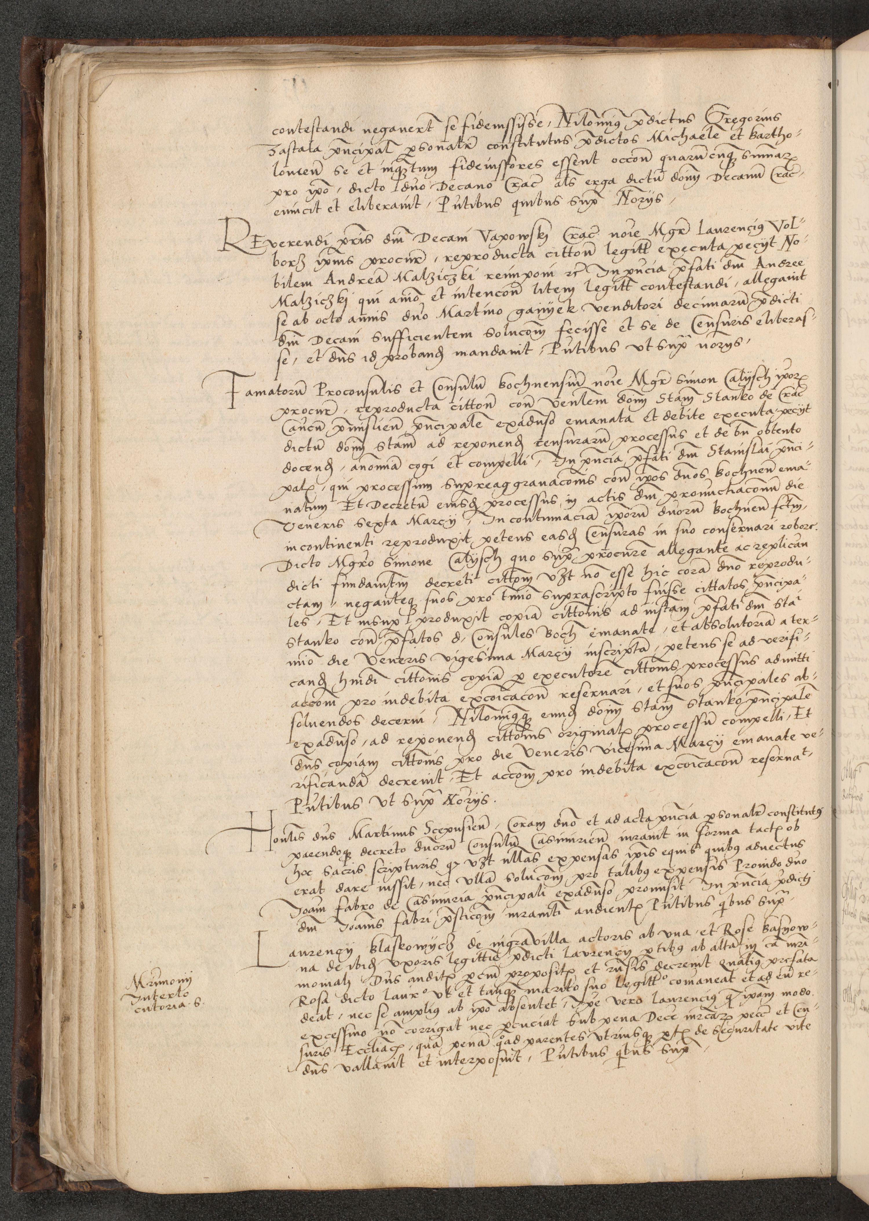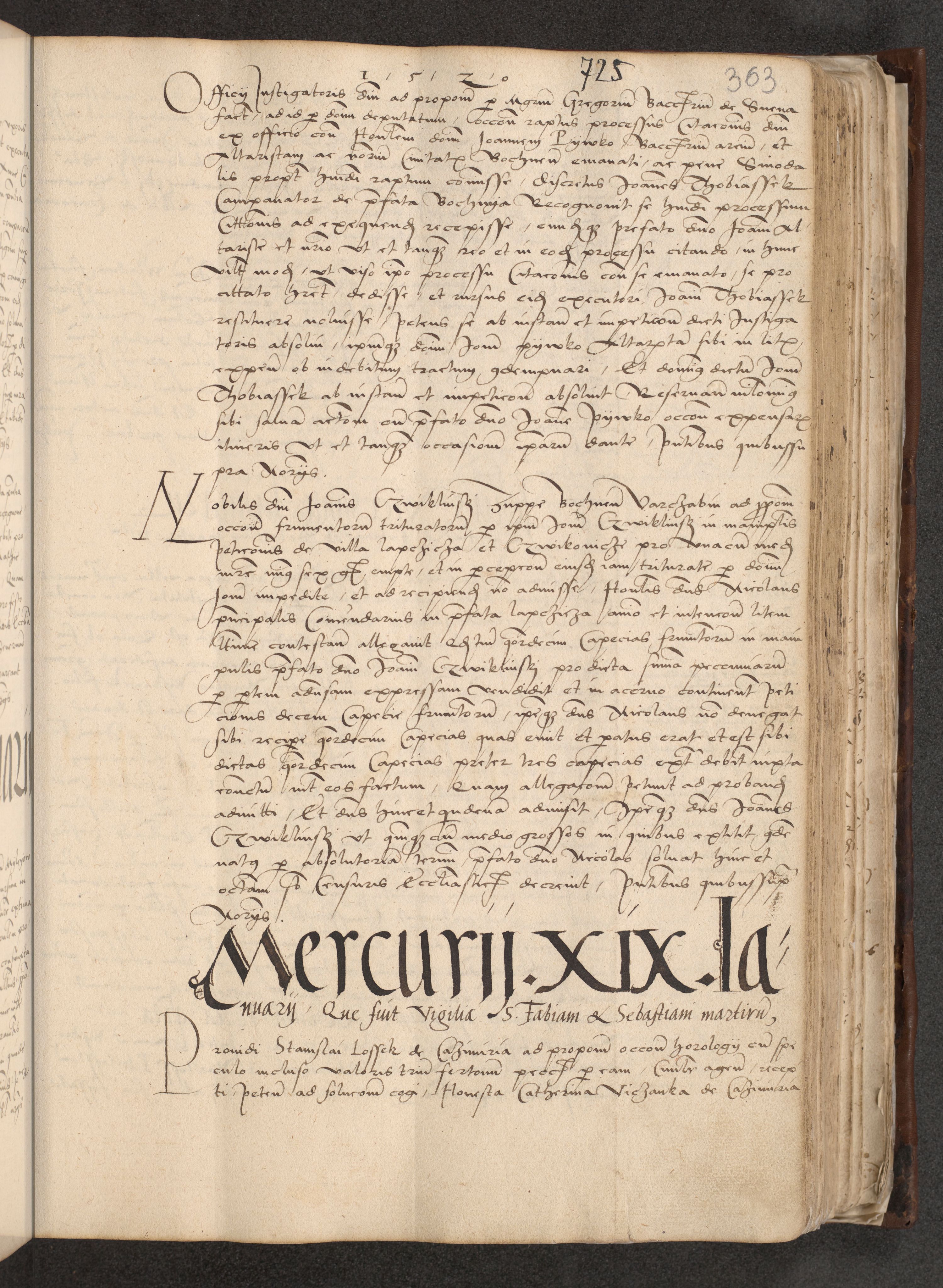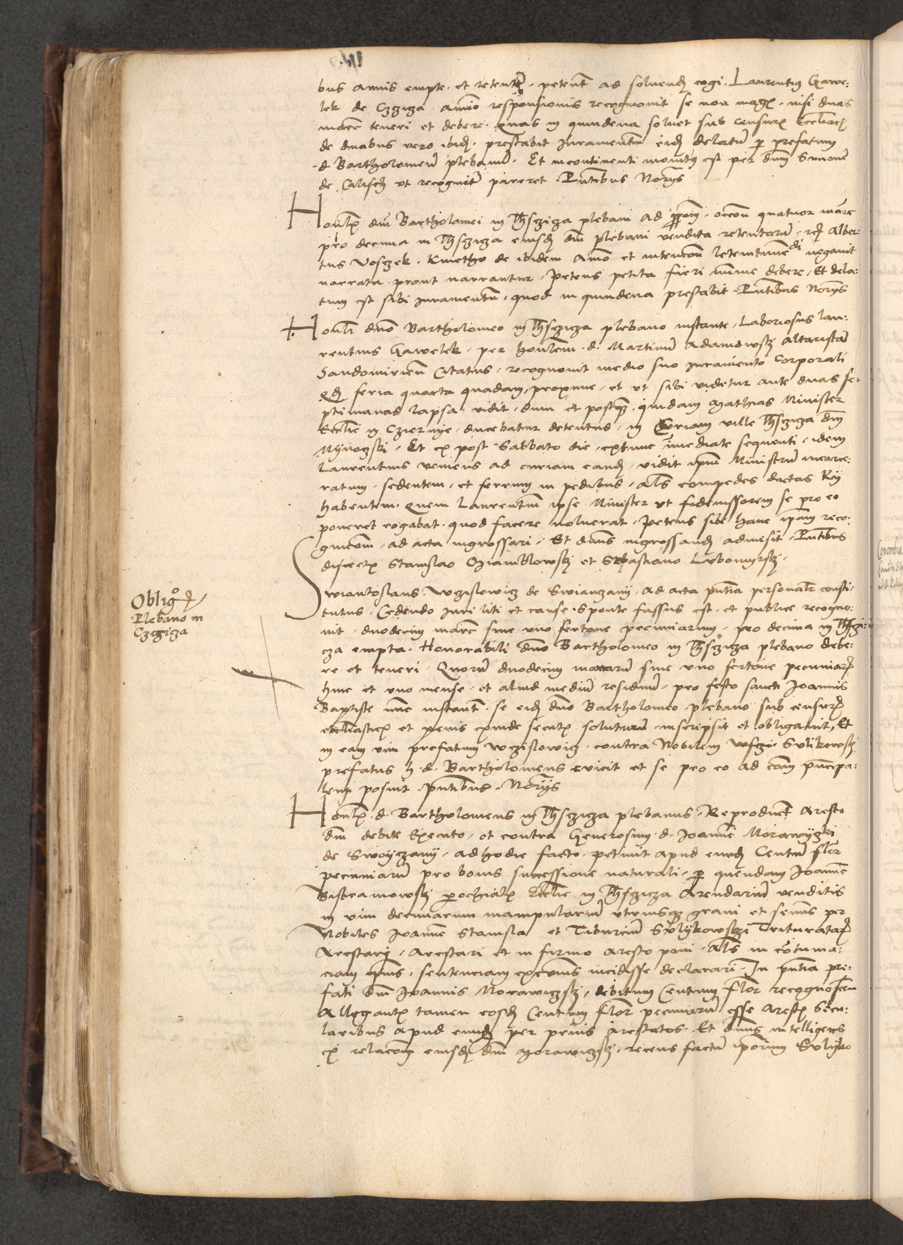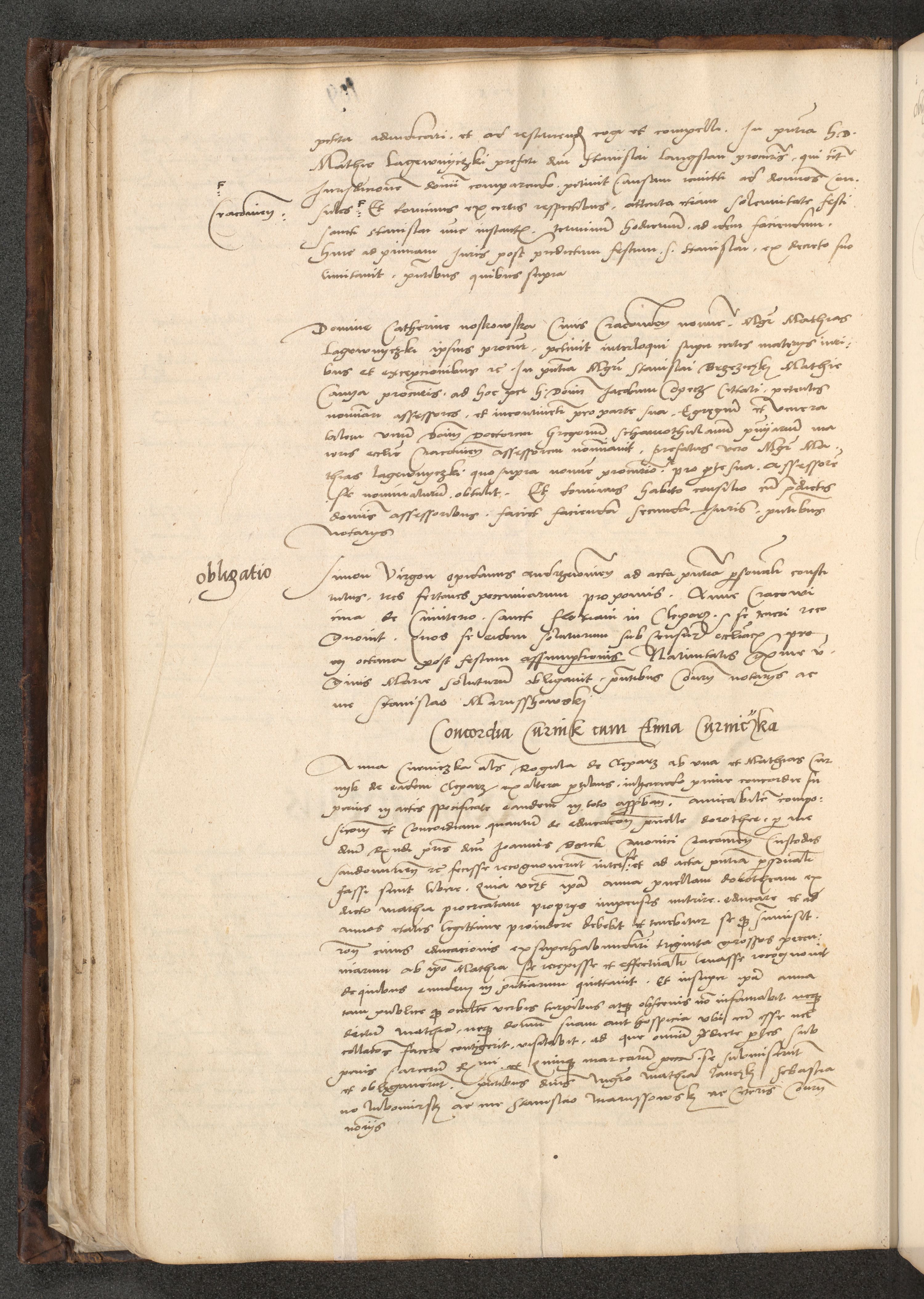 INRI. Acta actorum, obligacionum et sentenciarum tam interlocutoriarum quam diffinitivarum coram reverendo patre ac egregio viro domino Jacobo Erciss[o]wski decretorum doctorem, canonico et officiali generali Cracoviensi ad annum Domini 1528, indicionem primam, pontificatus sanctissimi in Christo patris et domini domini Clementis divina probidendcia pape seprtimi, annum quintum, per Stanislaum de Mordi legalem consistorii notarium omine felici inchoantur
