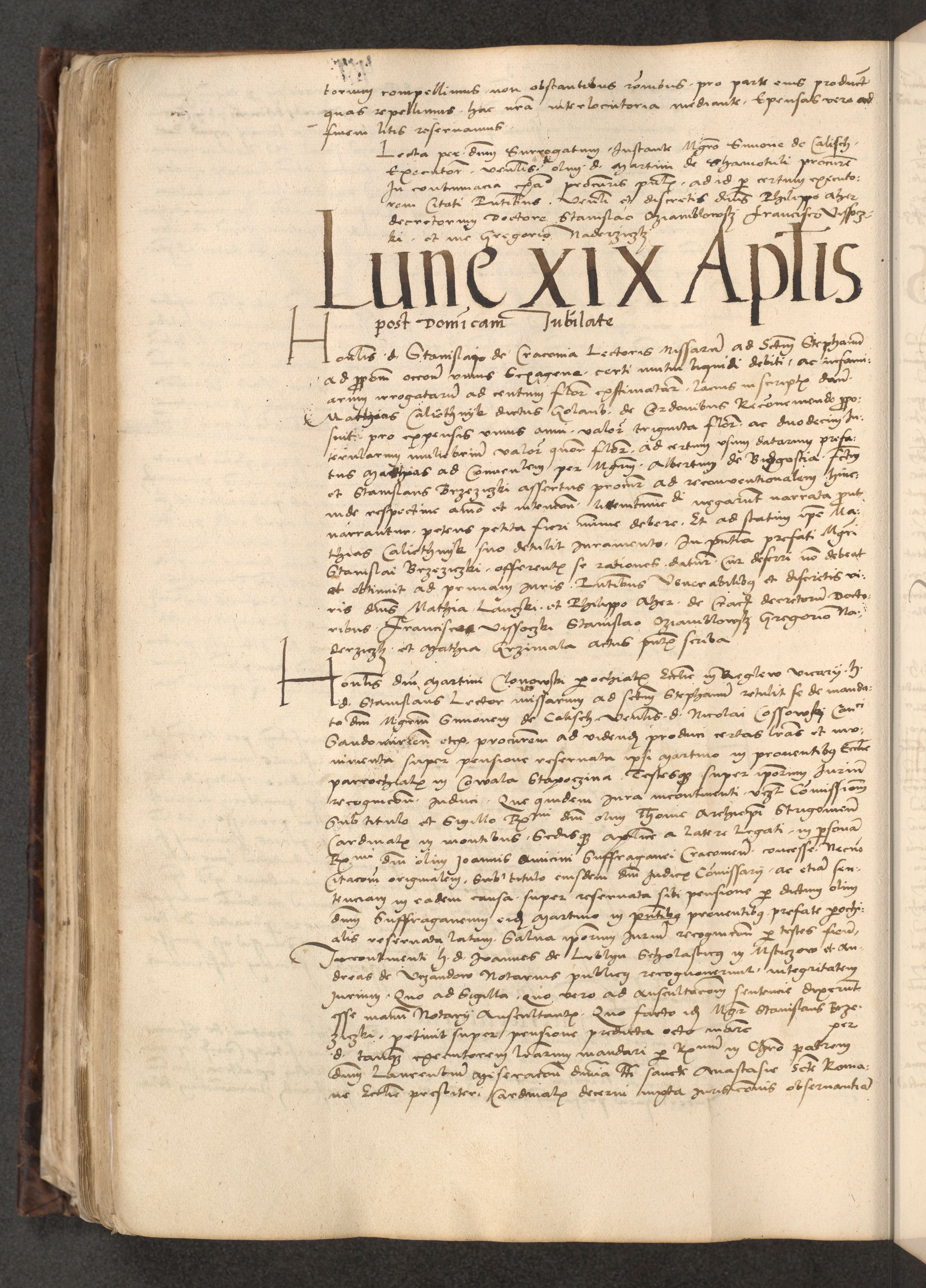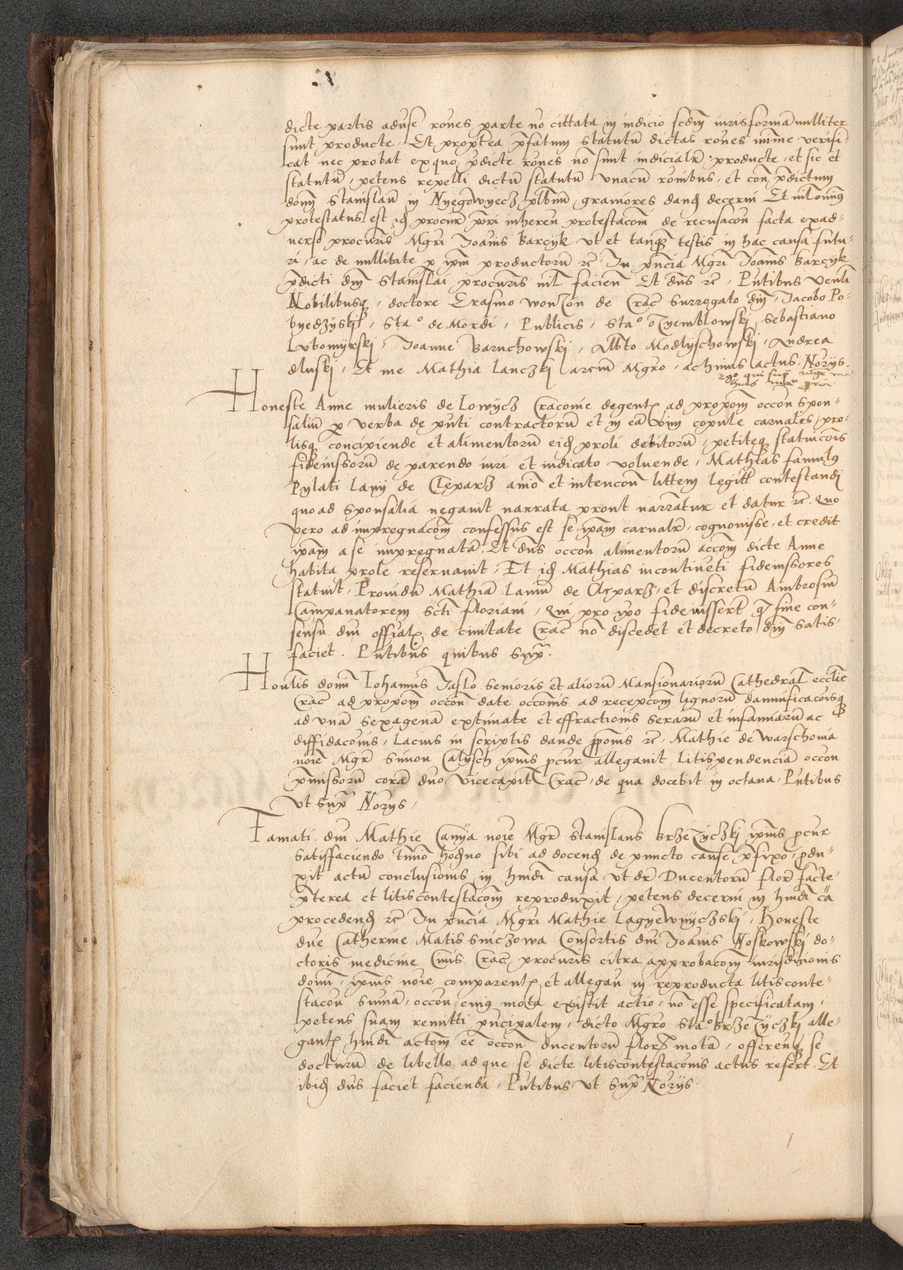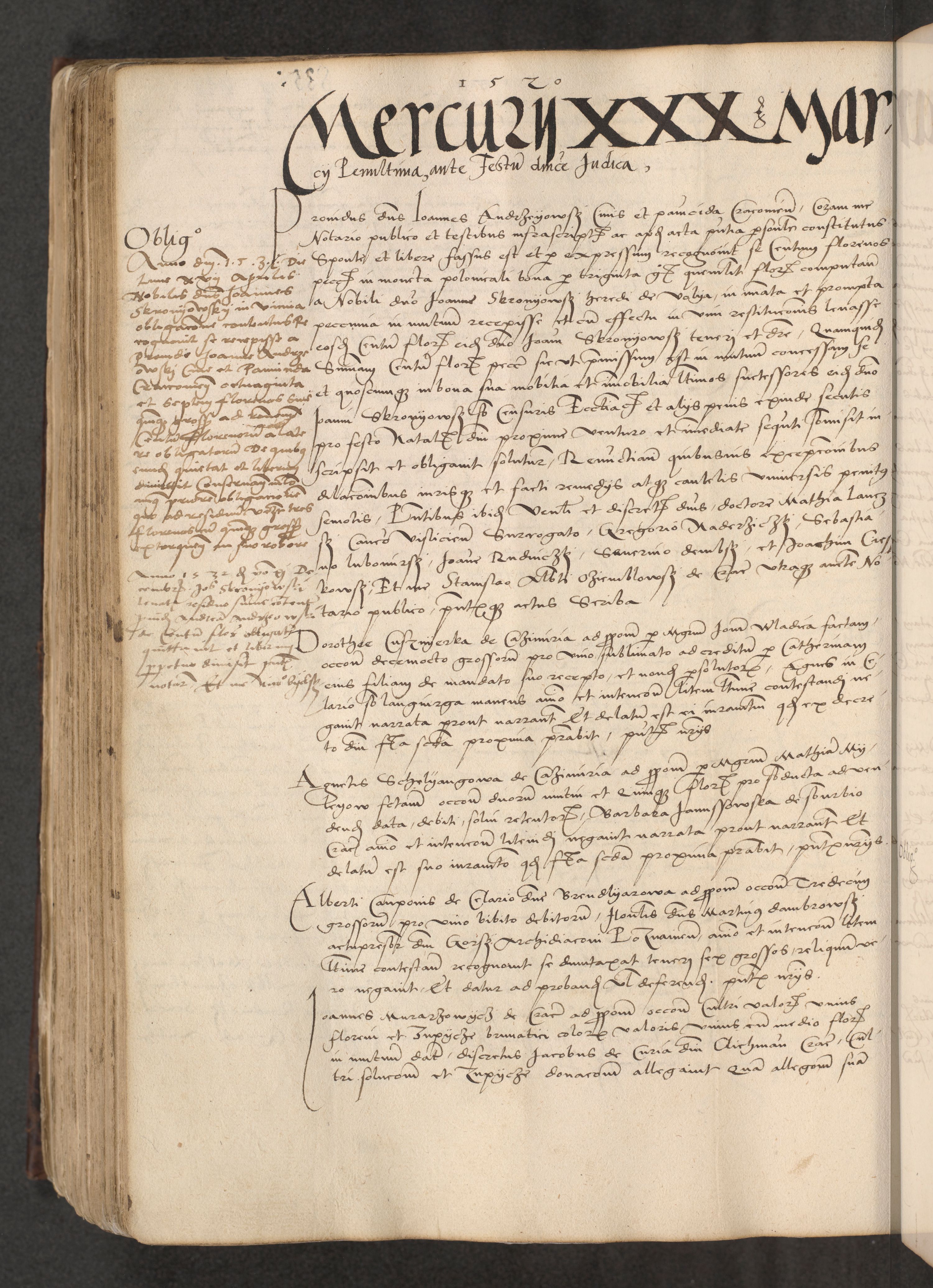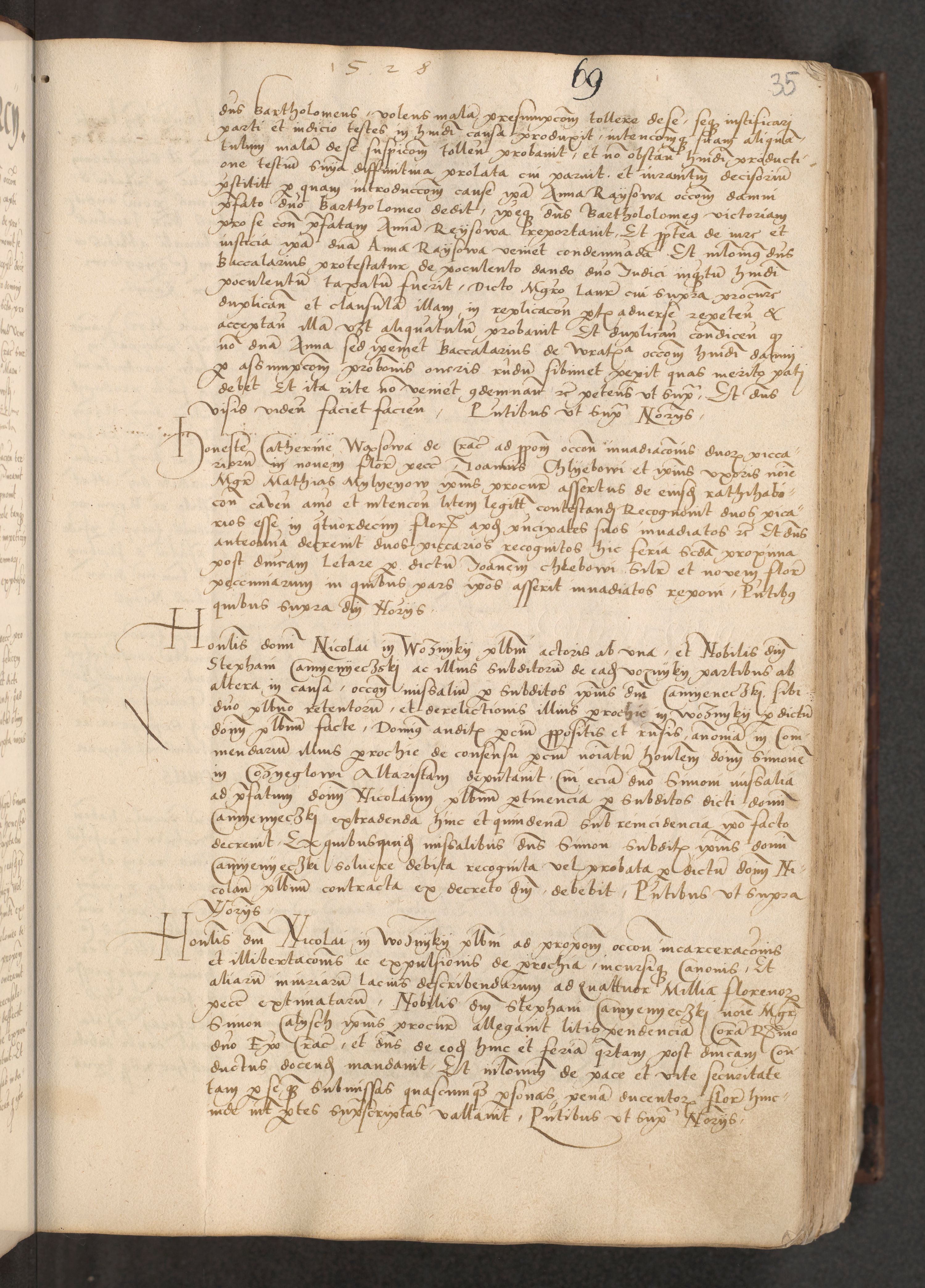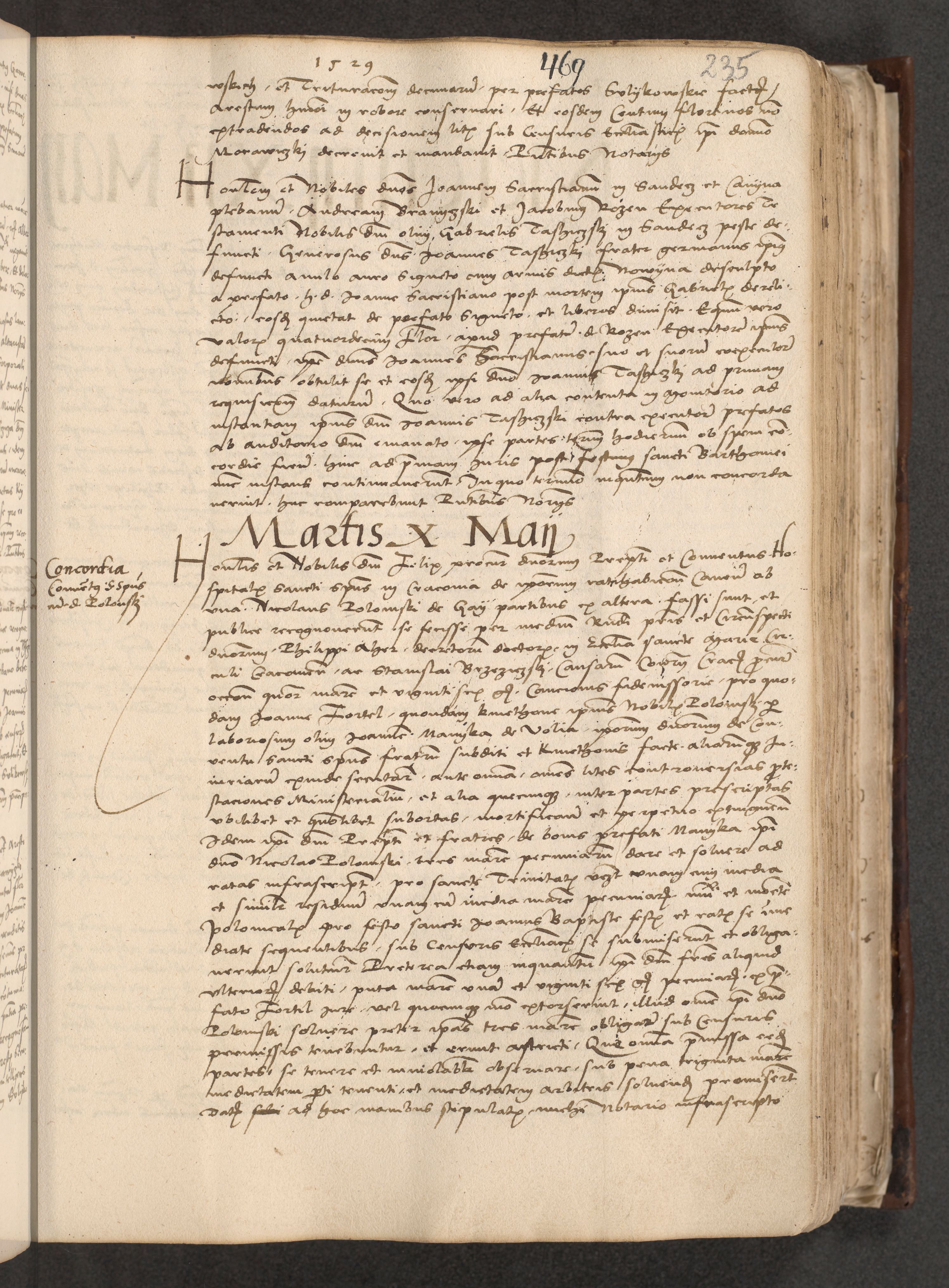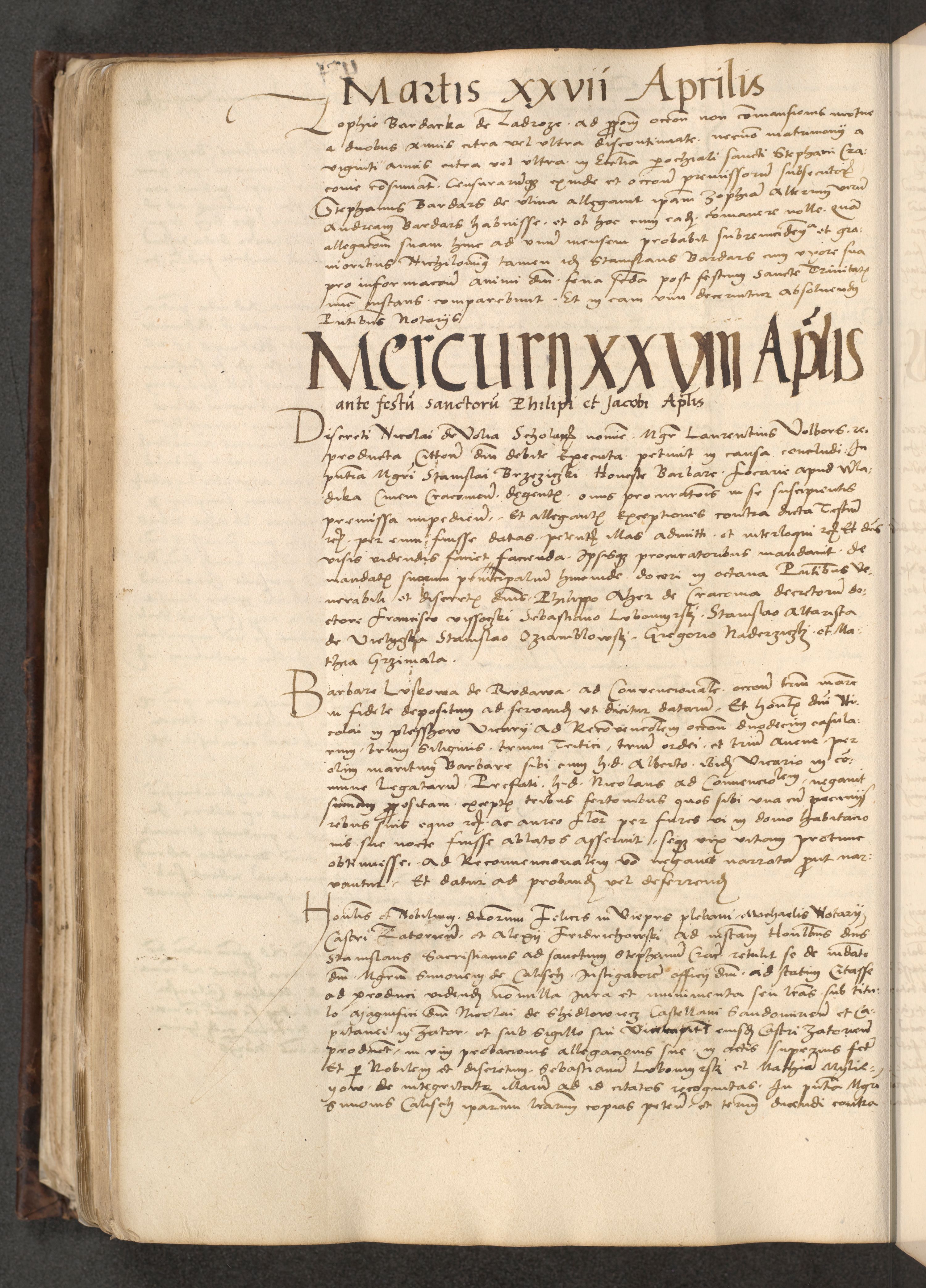 INRI. Acta actorum, obligacionum et sentenciarum tam interlocutoriarum quam diffinitivarum coram reverendo patre ac egregio viro domino Jacobo Erciss[o]wski decretorum doctorem, canonico et officiali generali Cracoviensi ad annum Domini 1528, indicionem primam, pontificatus sanctissimi in Christo patris et domini domini Clementis divina probidendcia pape seprtimi, annum quintum, per Stanislaum de Mordi legalem consistorii notarium omine felici inchoantur