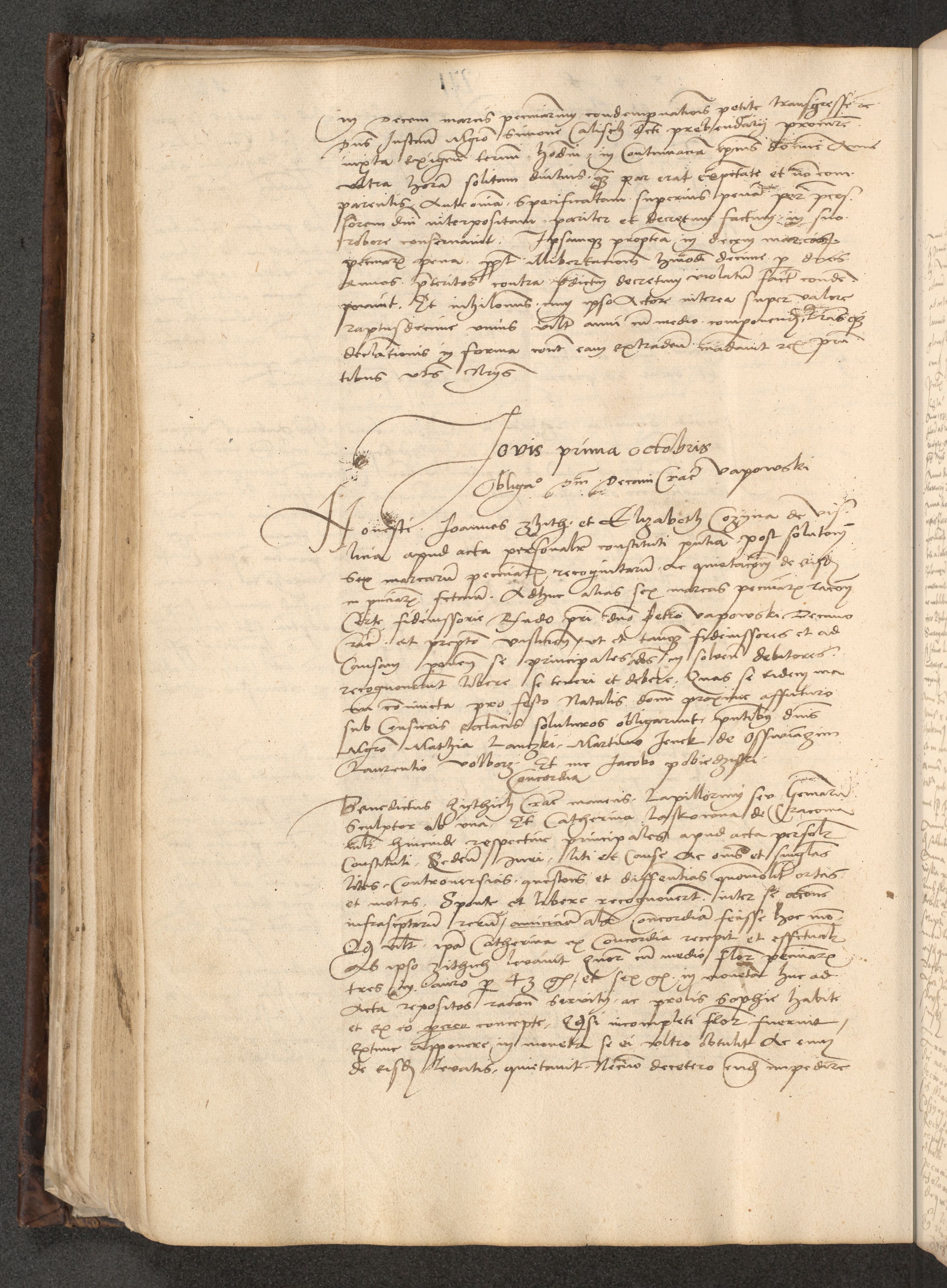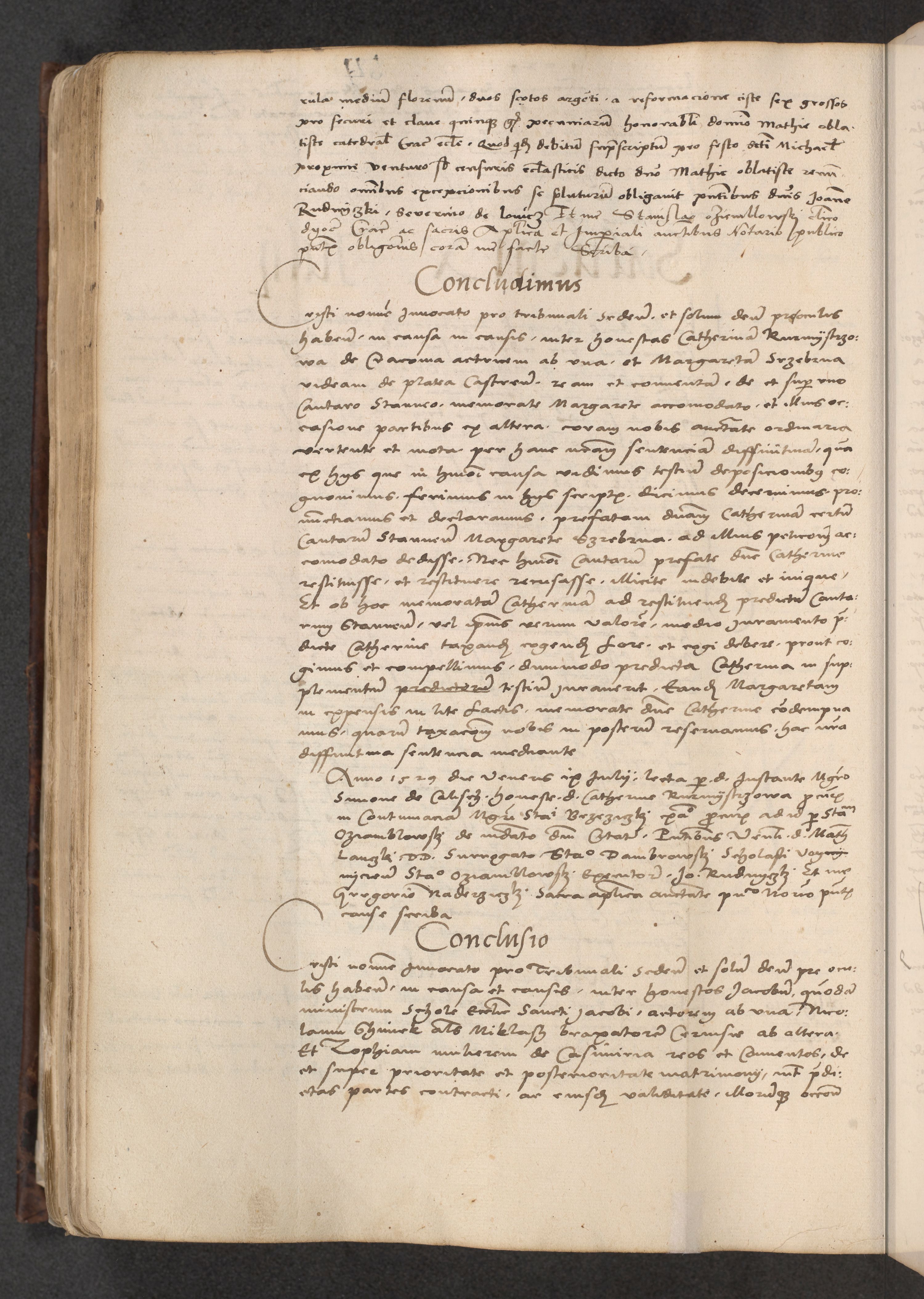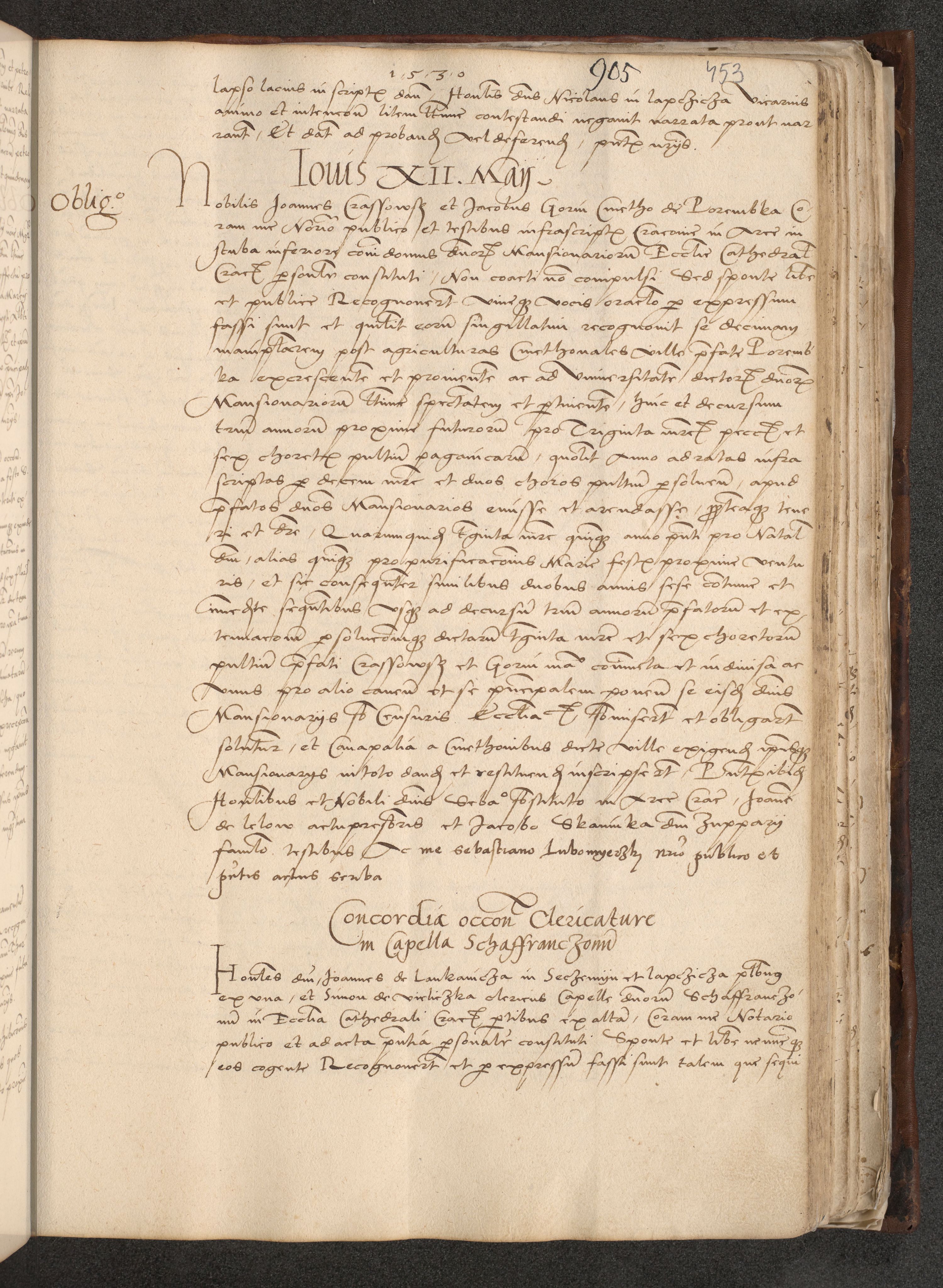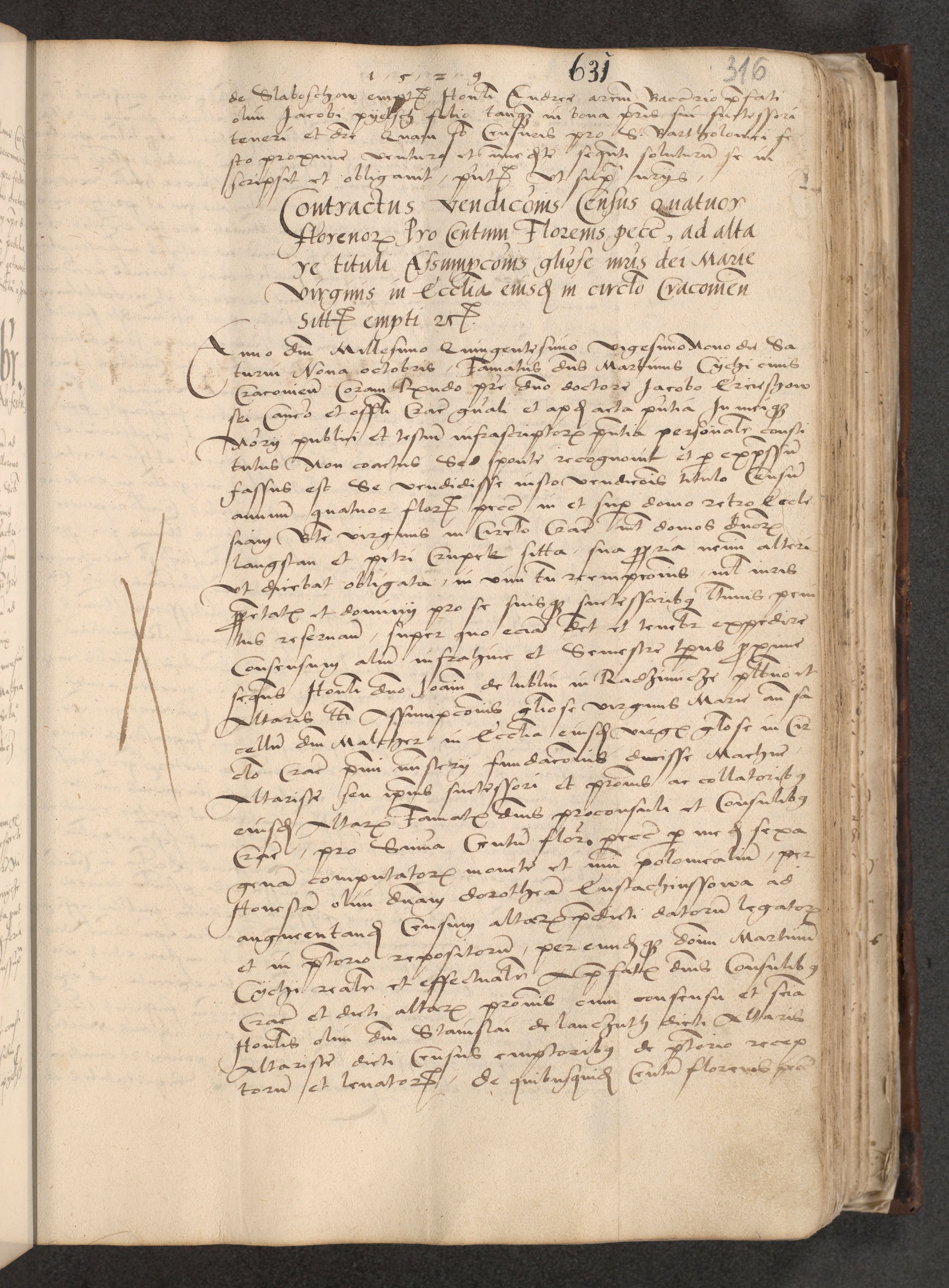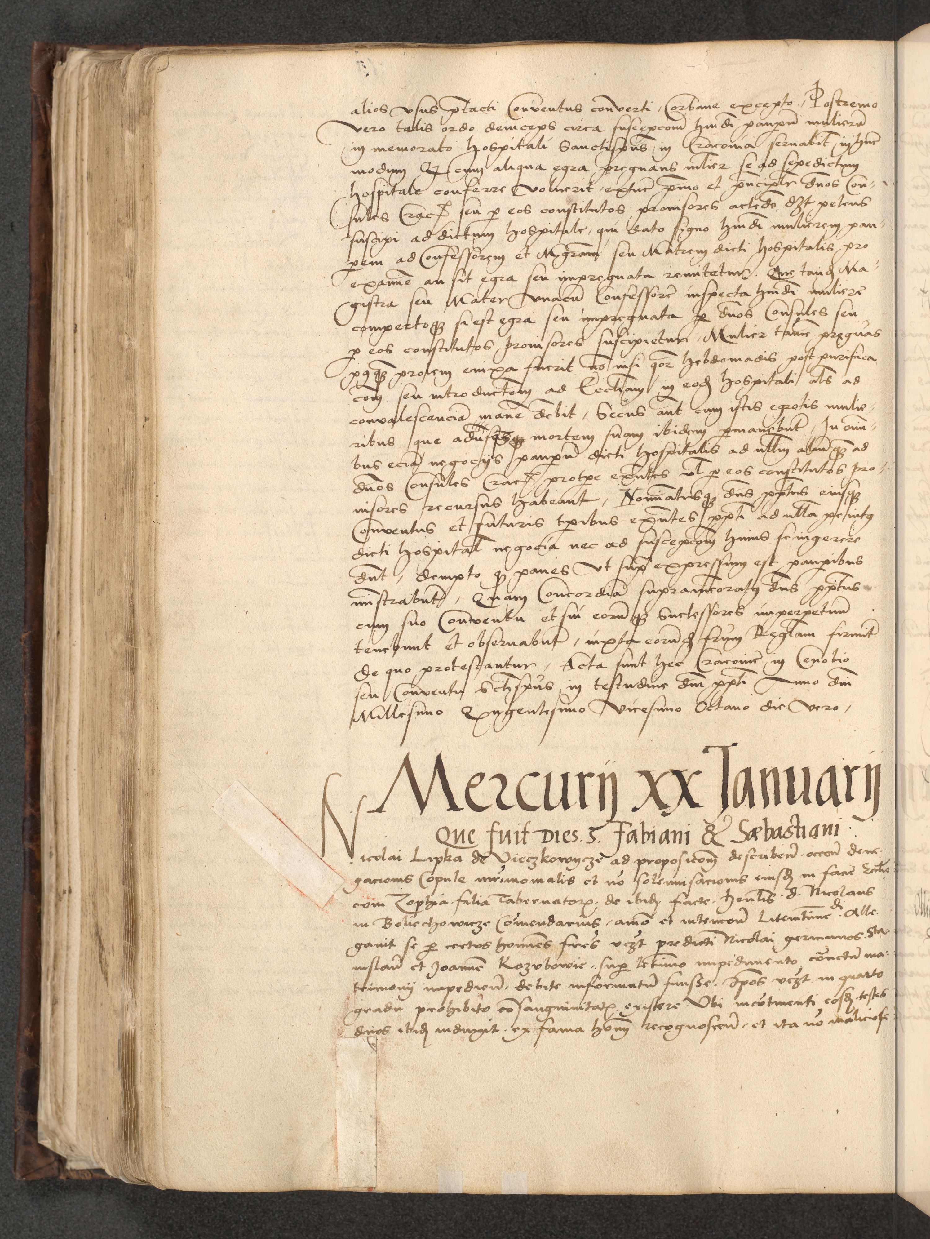 INRI. Acta actorum, obligacionum et sentenciarum tam interlocutoriarum quam diffinitivarum coram reverendo patre ac egregio viro domino Jacobo Erciss[o]wski decretorum doctorem, canonico et officiali generali Cracoviensi ad annum Domini 1528, indicionem primam, pontificatus sanctissimi in Christo patris et domini domini Clementis divina probidendcia pape seprtimi, annum quintum, per Stanislaum de Mordi legalem consistorii notarium omine felici inchoantur