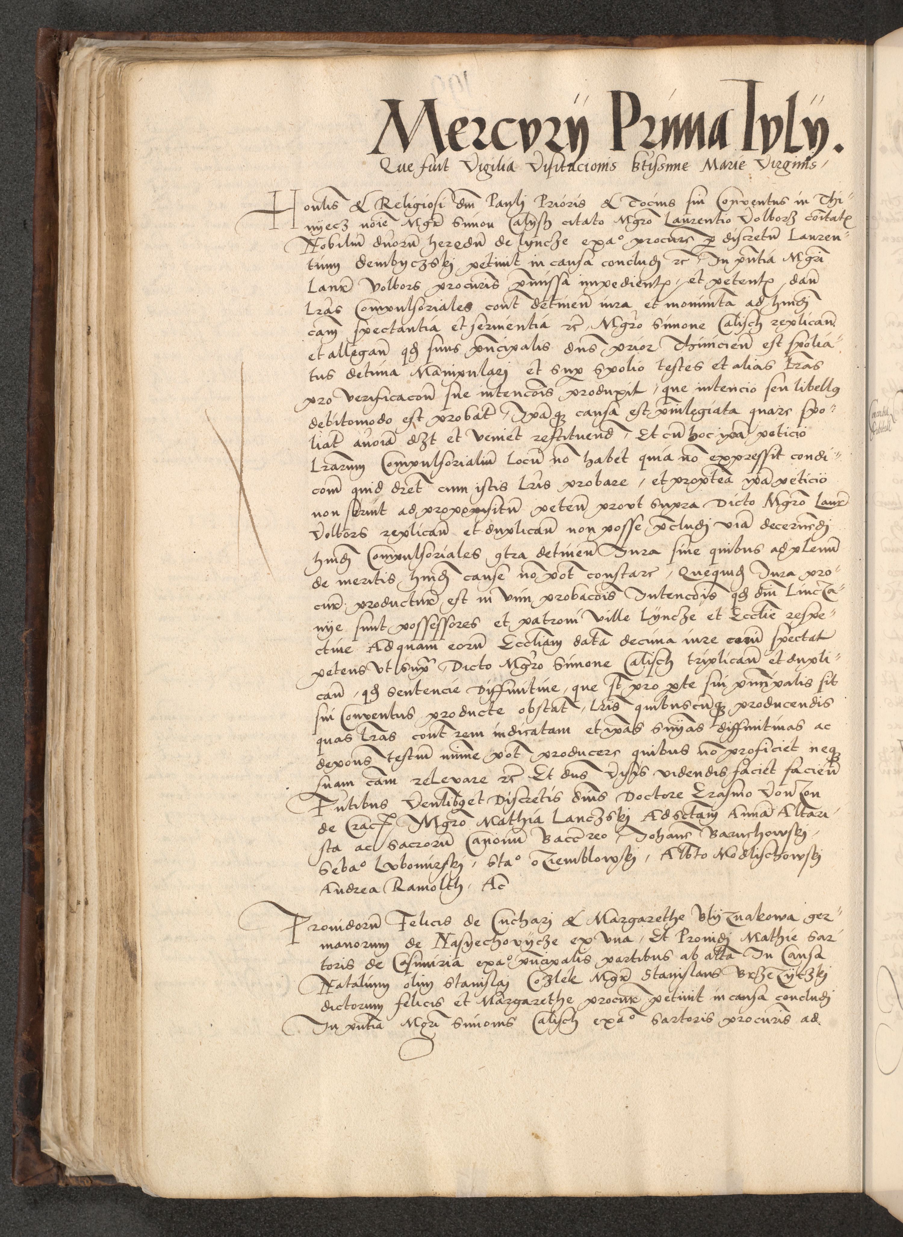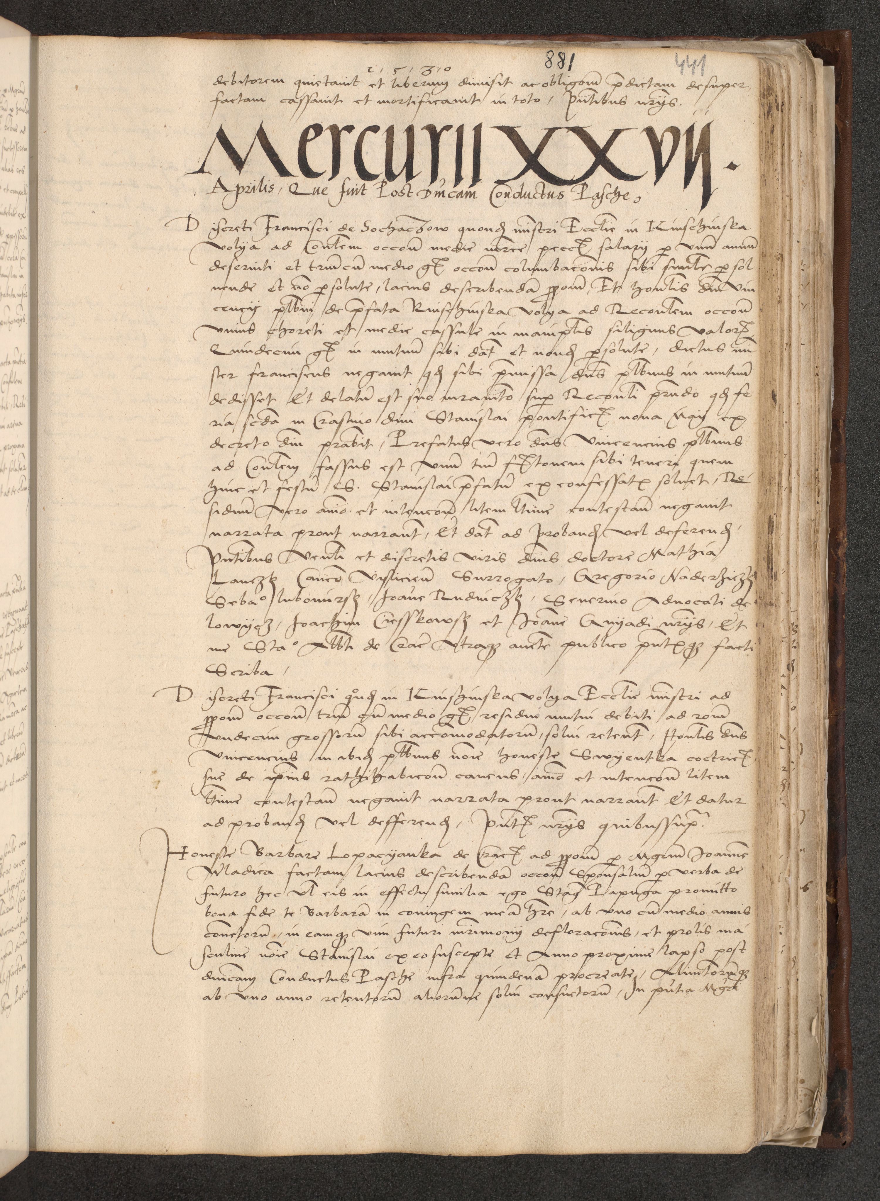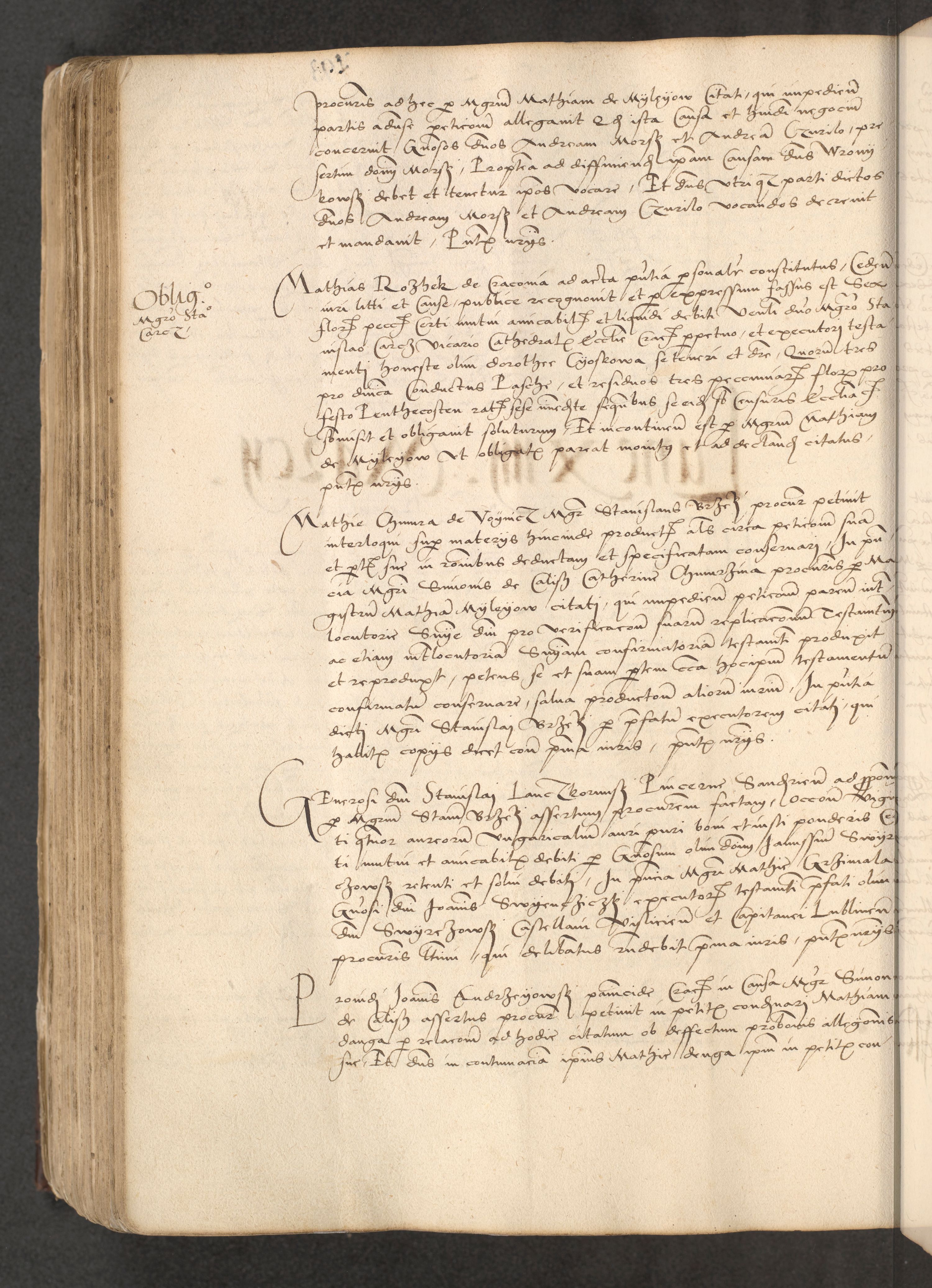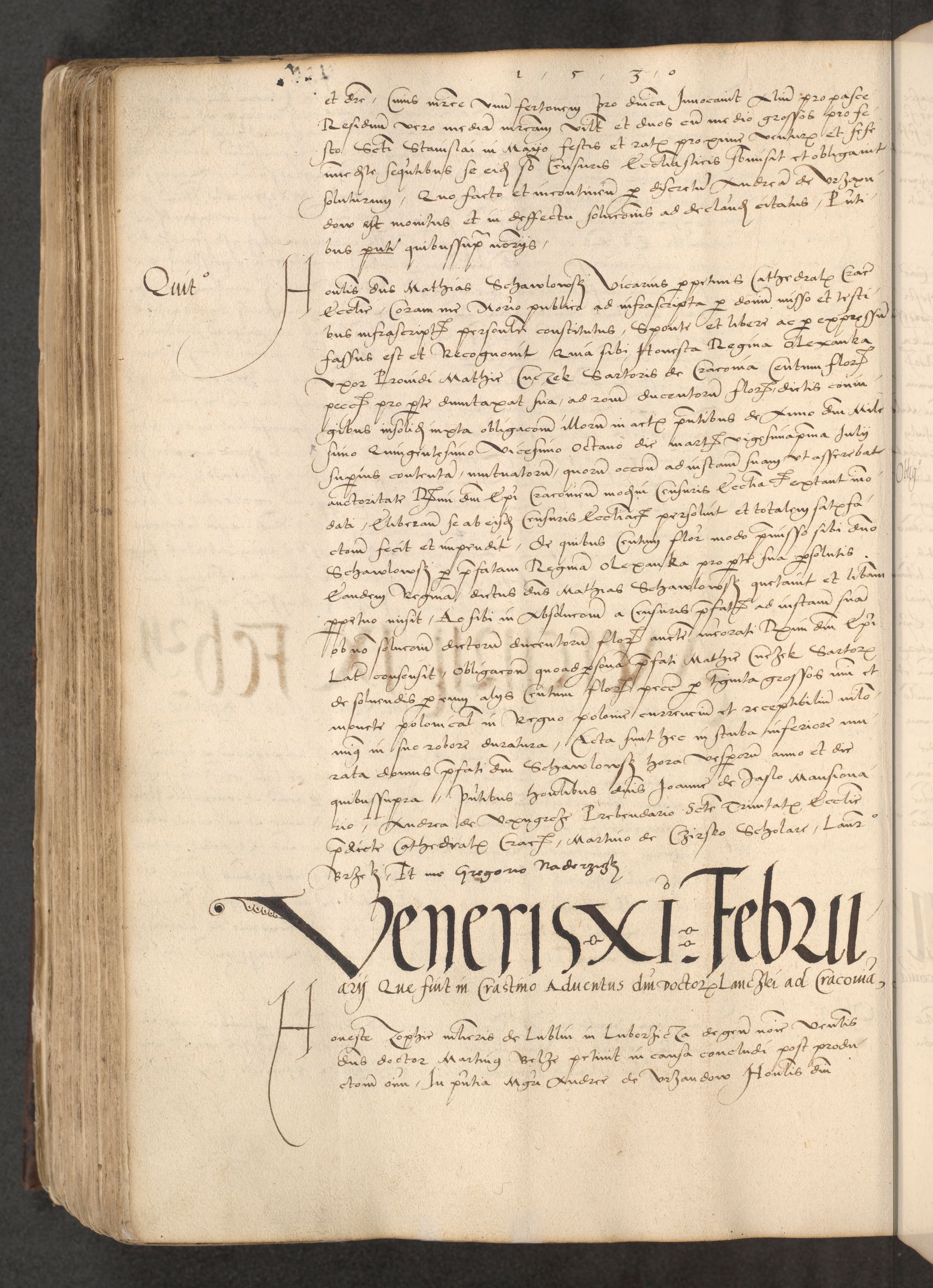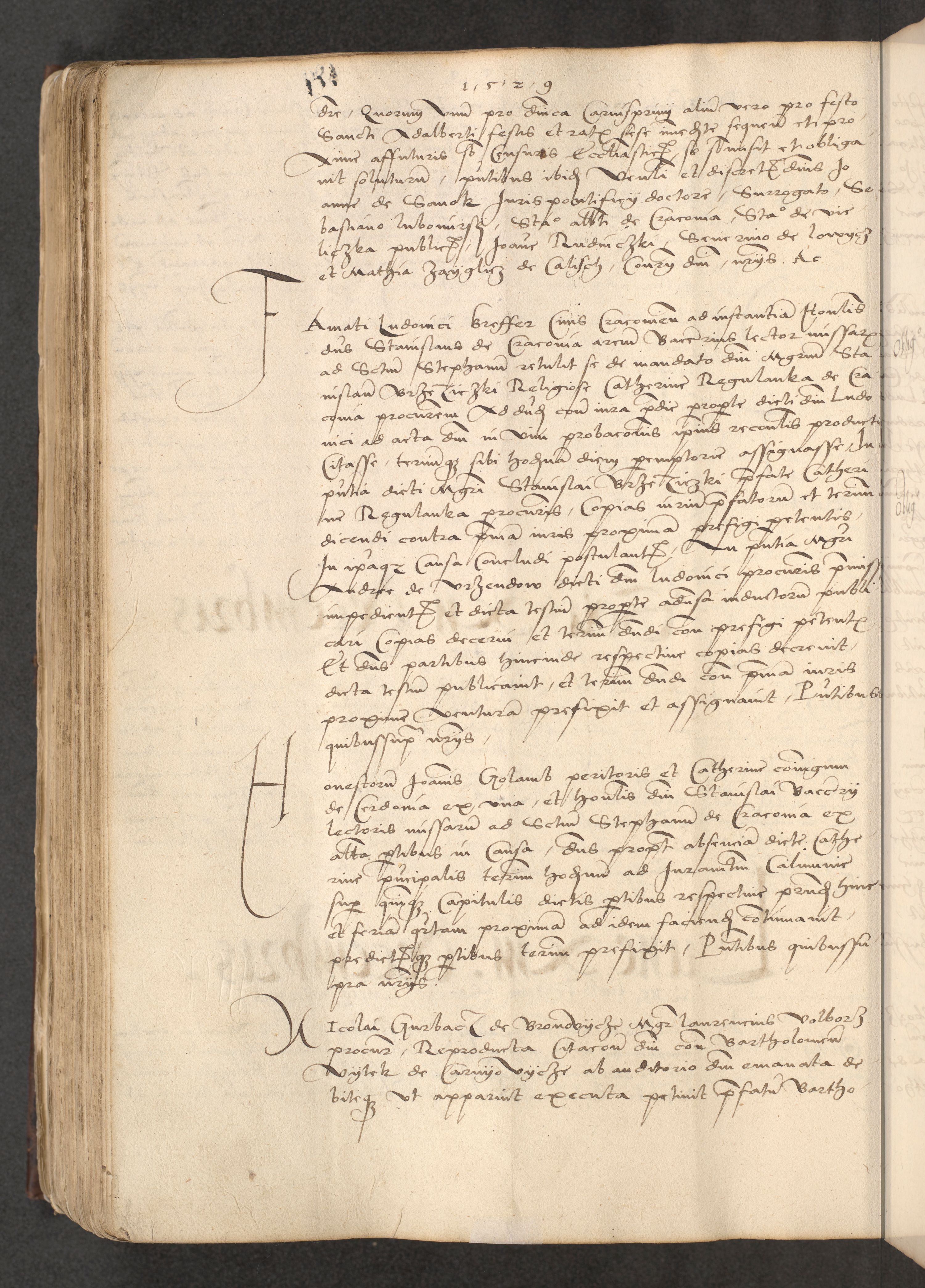 INRI. Acta actorum, obligacionum et sentenciarum tam interlocutoriarum quam diffinitivarum coram reverendo patre ac egregio viro domino Jacobo Erciss[o]wski decretorum doctorem, canonico et officiali generali Cracoviensi ad annum Domini 1528, indicionem primam, pontificatus sanctissimi in Christo patris et domini domini Clementis divina probidendcia pape seprtimi, annum quintum, per Stanislaum de Mordi legalem consistorii notarium omine felici inchoantur