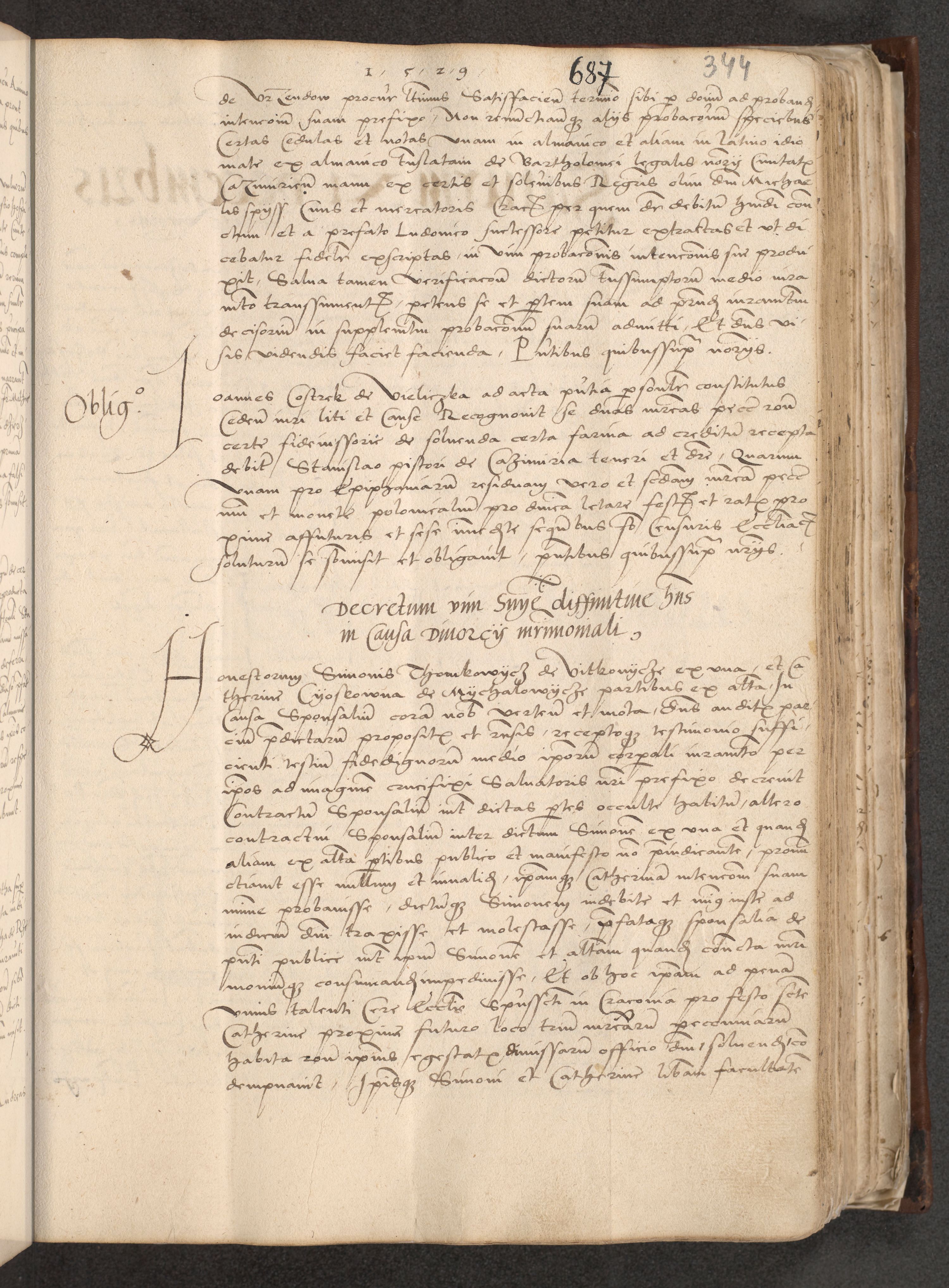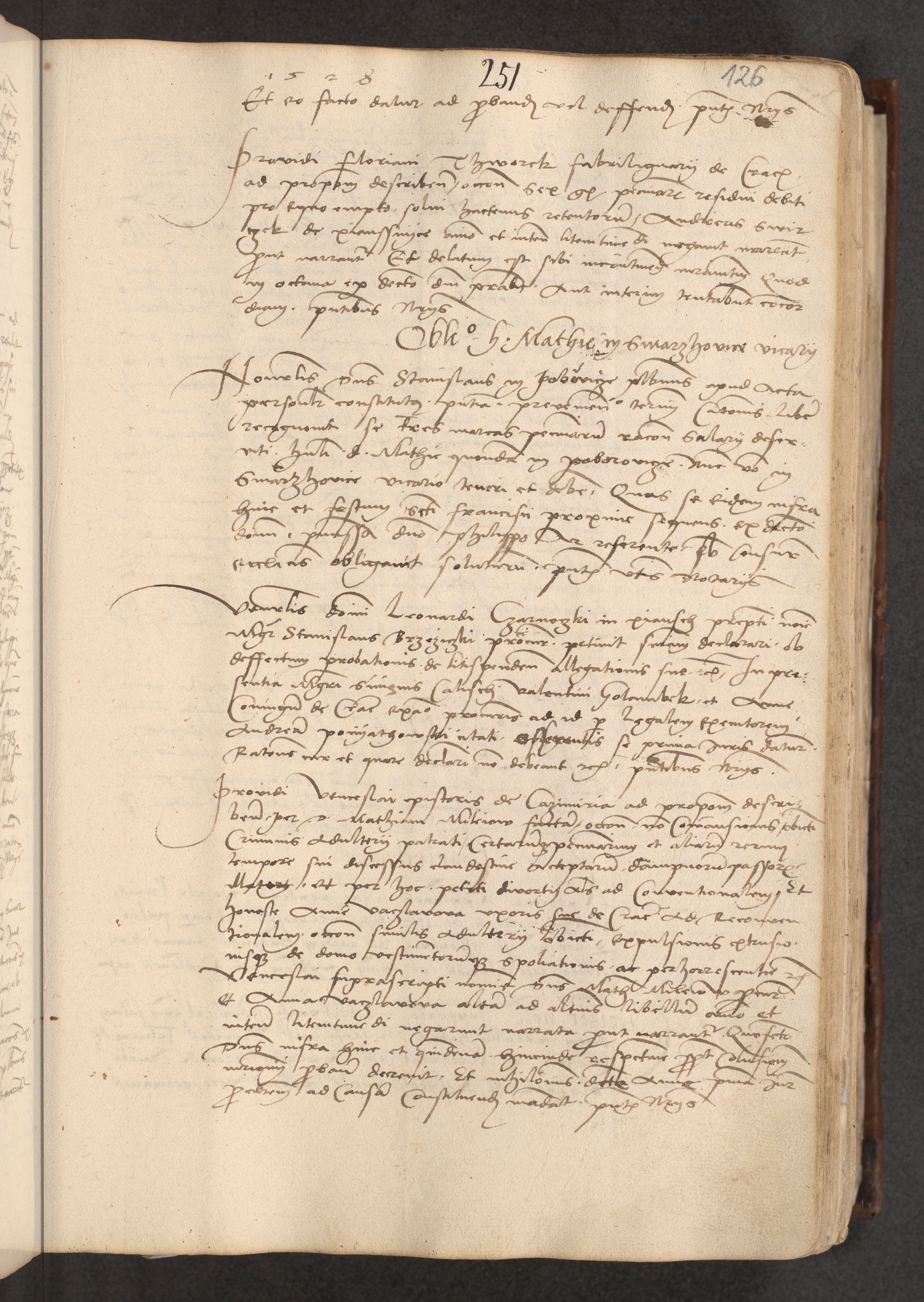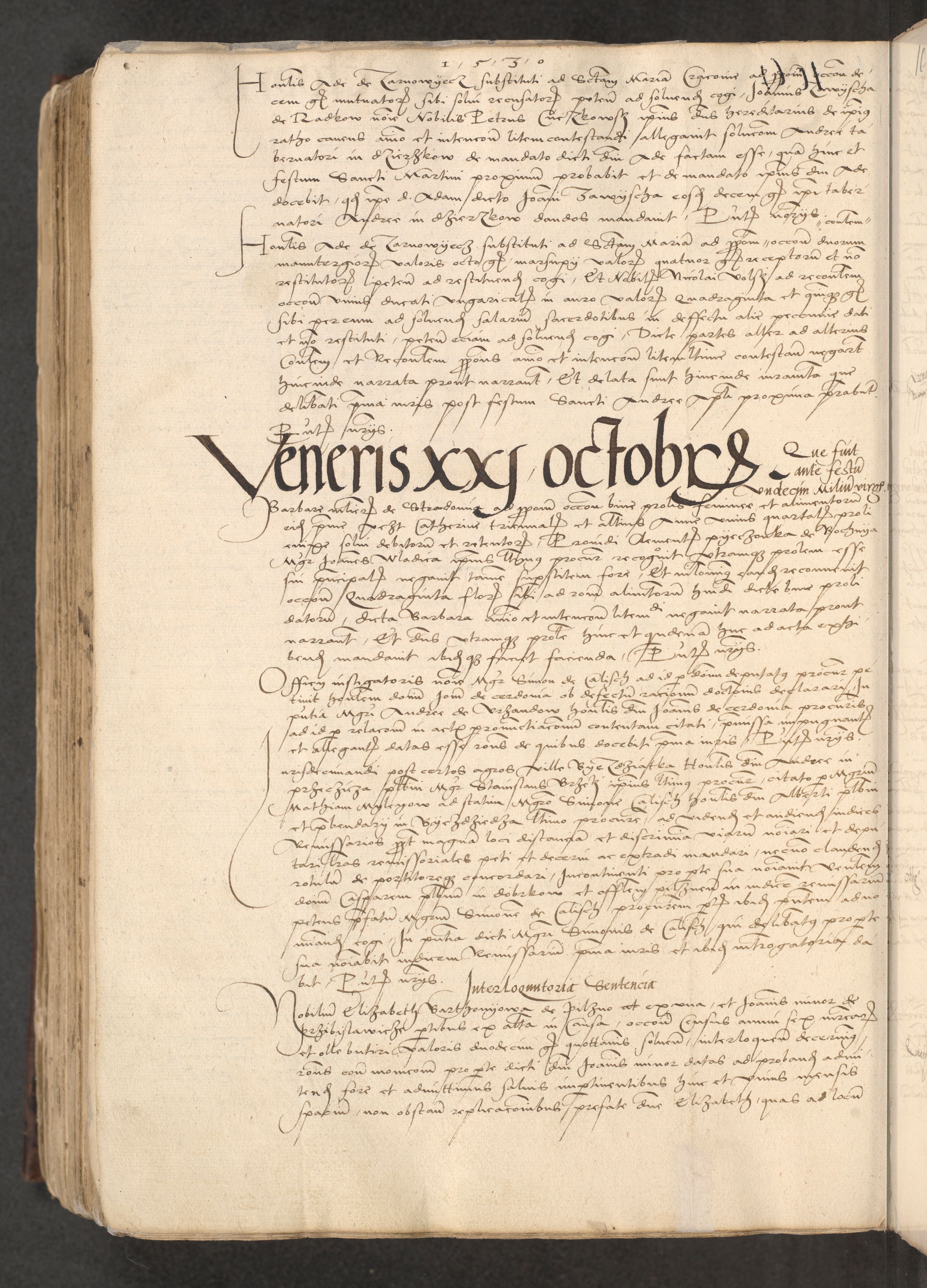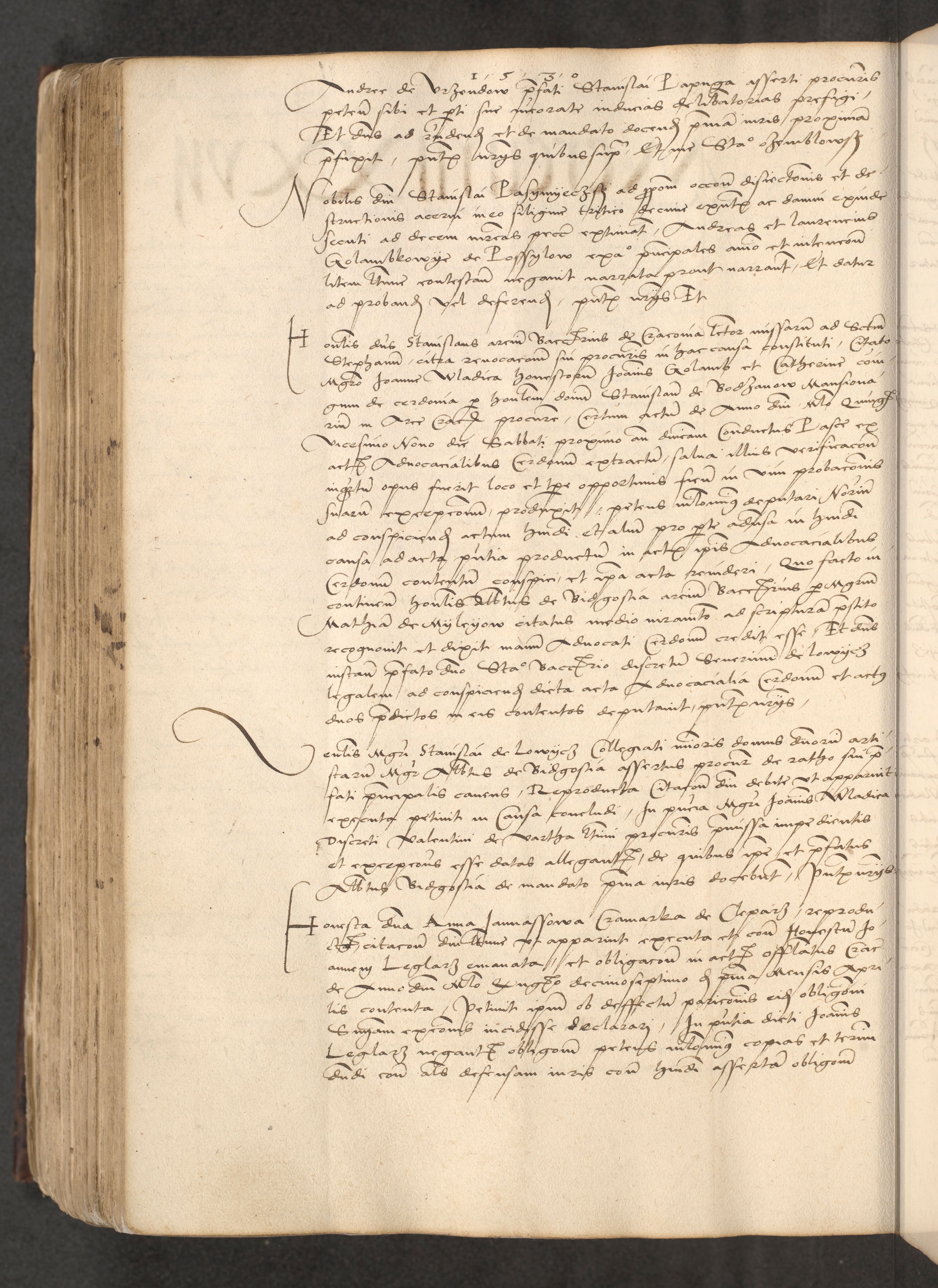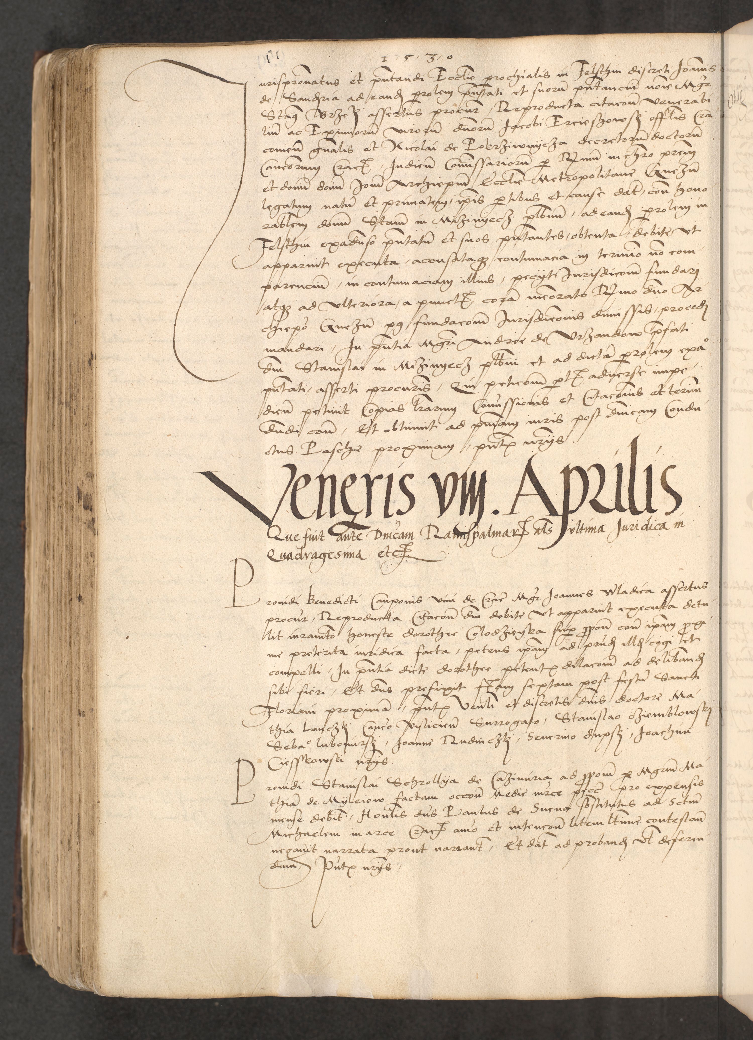 INRI. Acta actorum, obligacionum et sentenciarum tam interlocutoriarum quam diffinitivarum coram reverendo patre ac egregio viro domino Jacobo Erciss[o]wski decretorum doctorem, canonico et officiali generali Cracoviensi ad annum Domini 1528, indicionem primam, pontificatus sanctissimi in Christo patris et domini domini Clementis divina probidendcia pape seprtimi, annum quintum, per Stanislaum de Mordi legalem consistorii notarium omine felici inchoantur