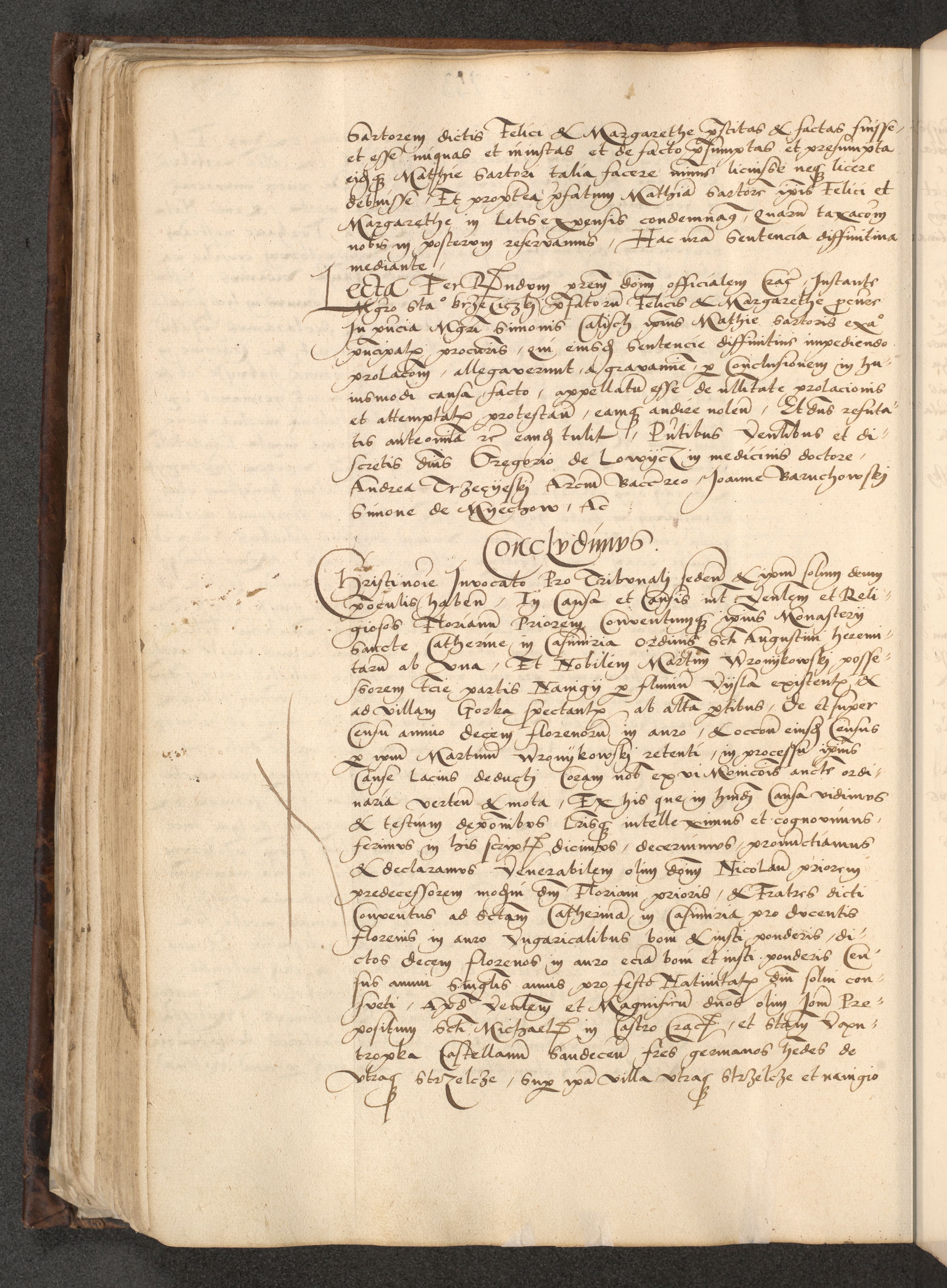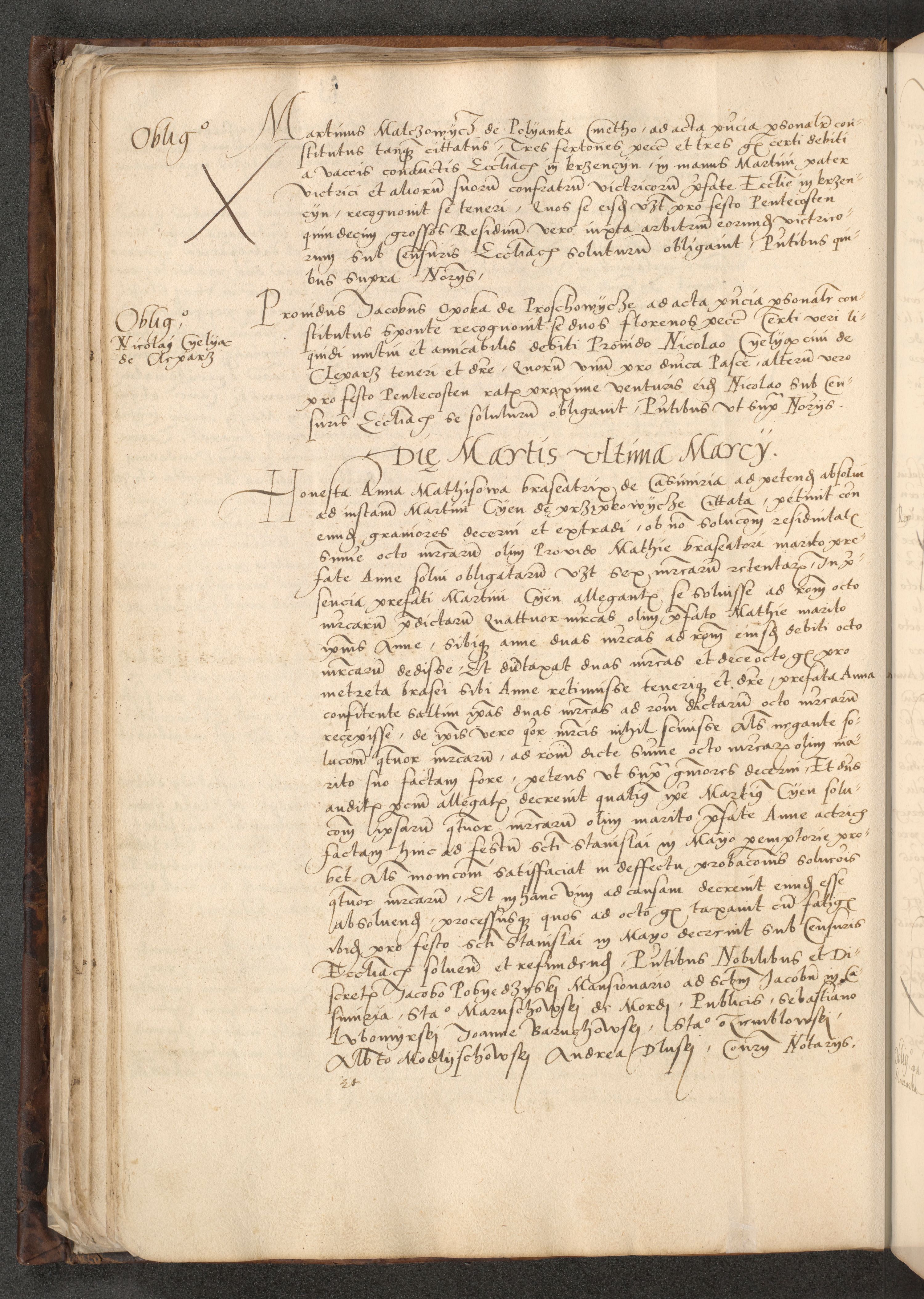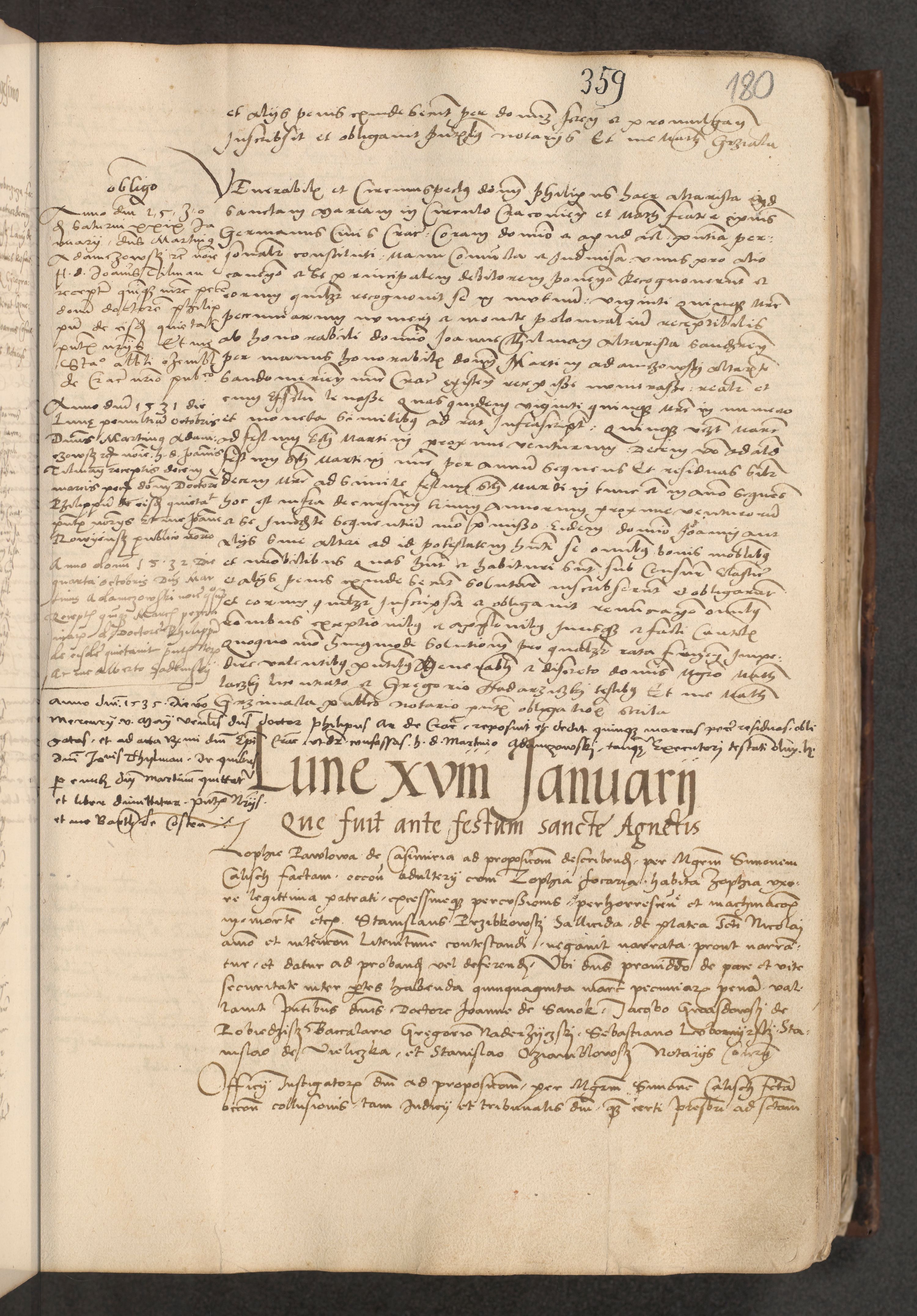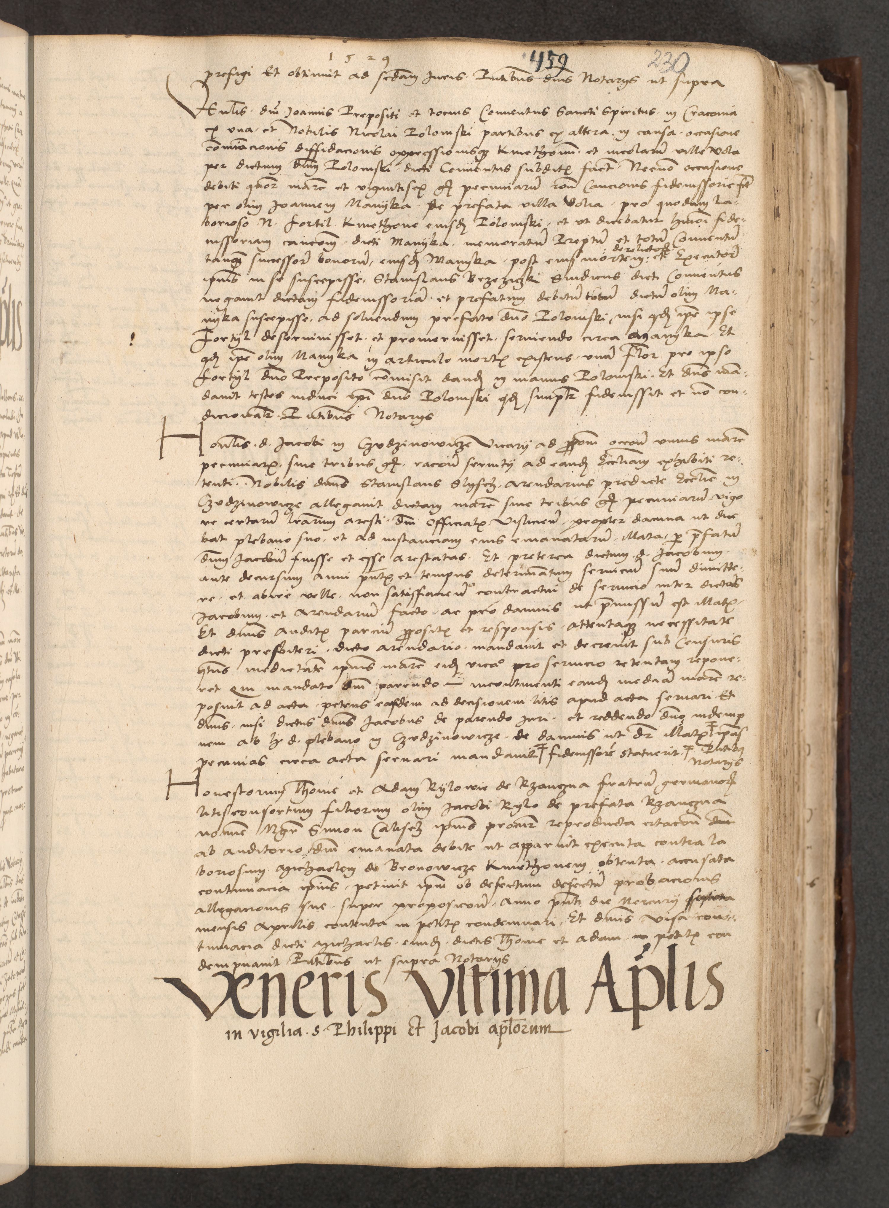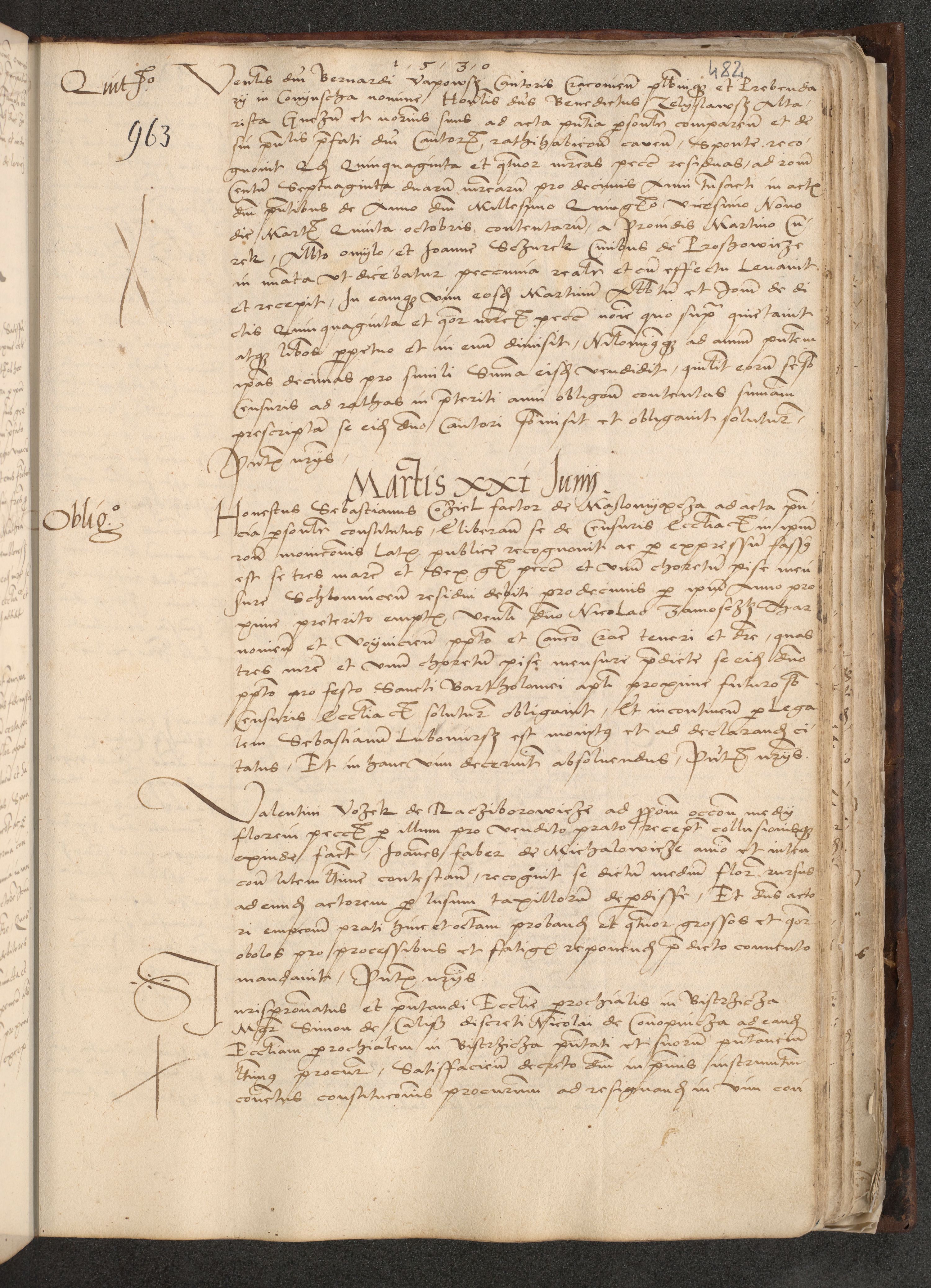 INRI. Acta actorum, obligacionum et sentenciarum tam interlocutoriarum quam diffinitivarum coram reverendo patre ac egregio viro domino Jacobo Erciss[o]wski decretorum doctorem, canonico et officiali generali Cracoviensi ad annum Domini 1528, indicionem primam, pontificatus sanctissimi in Christo patris et domini domini Clementis divina probidendcia pape seprtimi, annum quintum, per Stanislaum de Mordi legalem consistorii notarium omine felici inchoantur