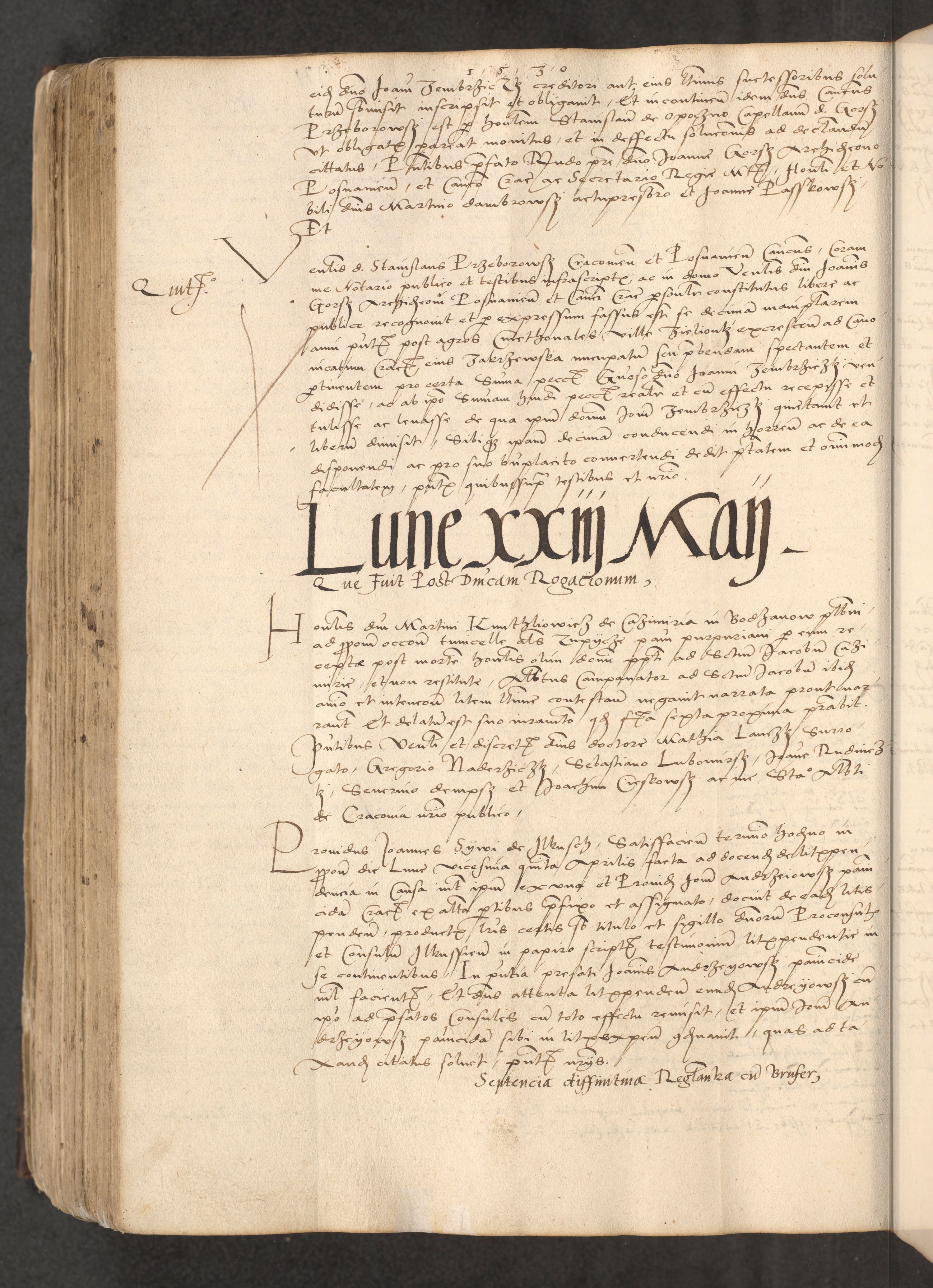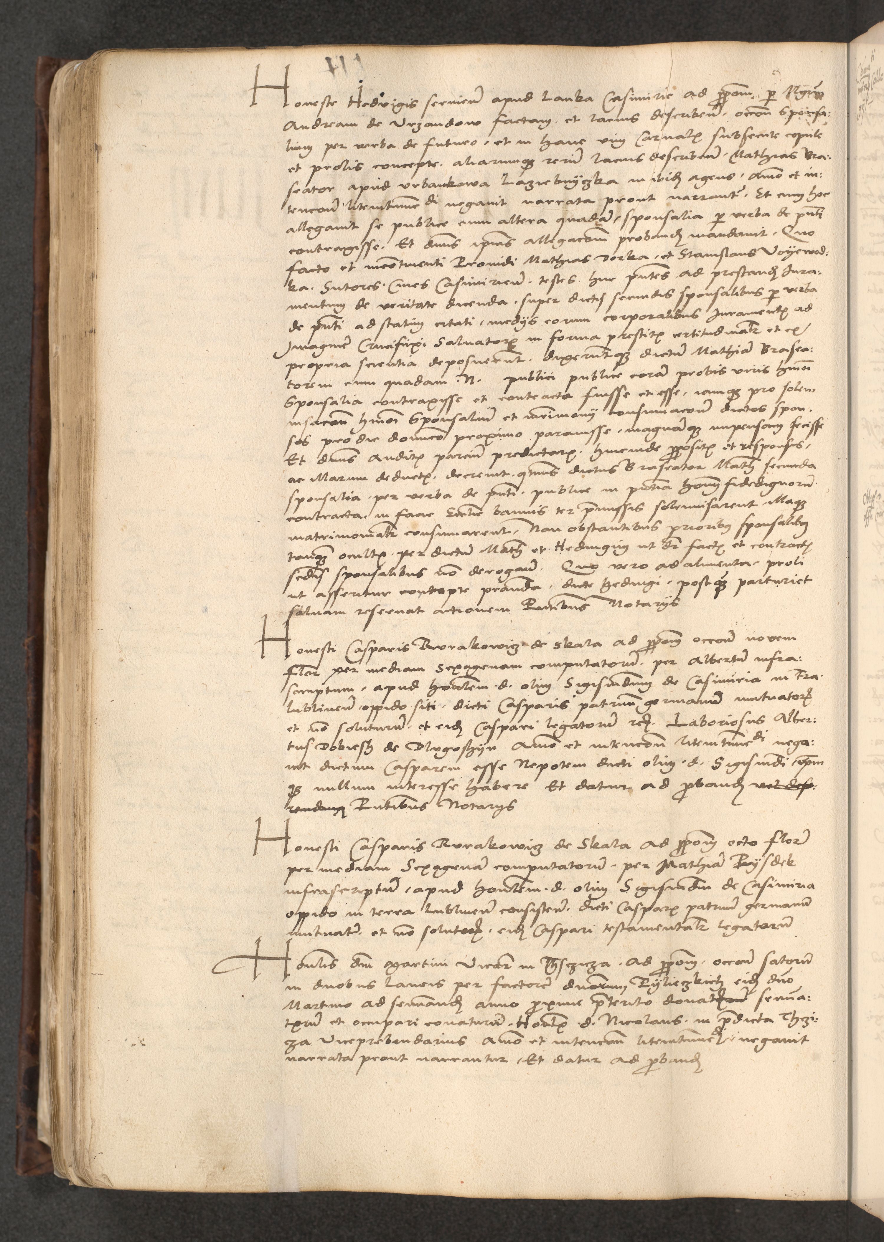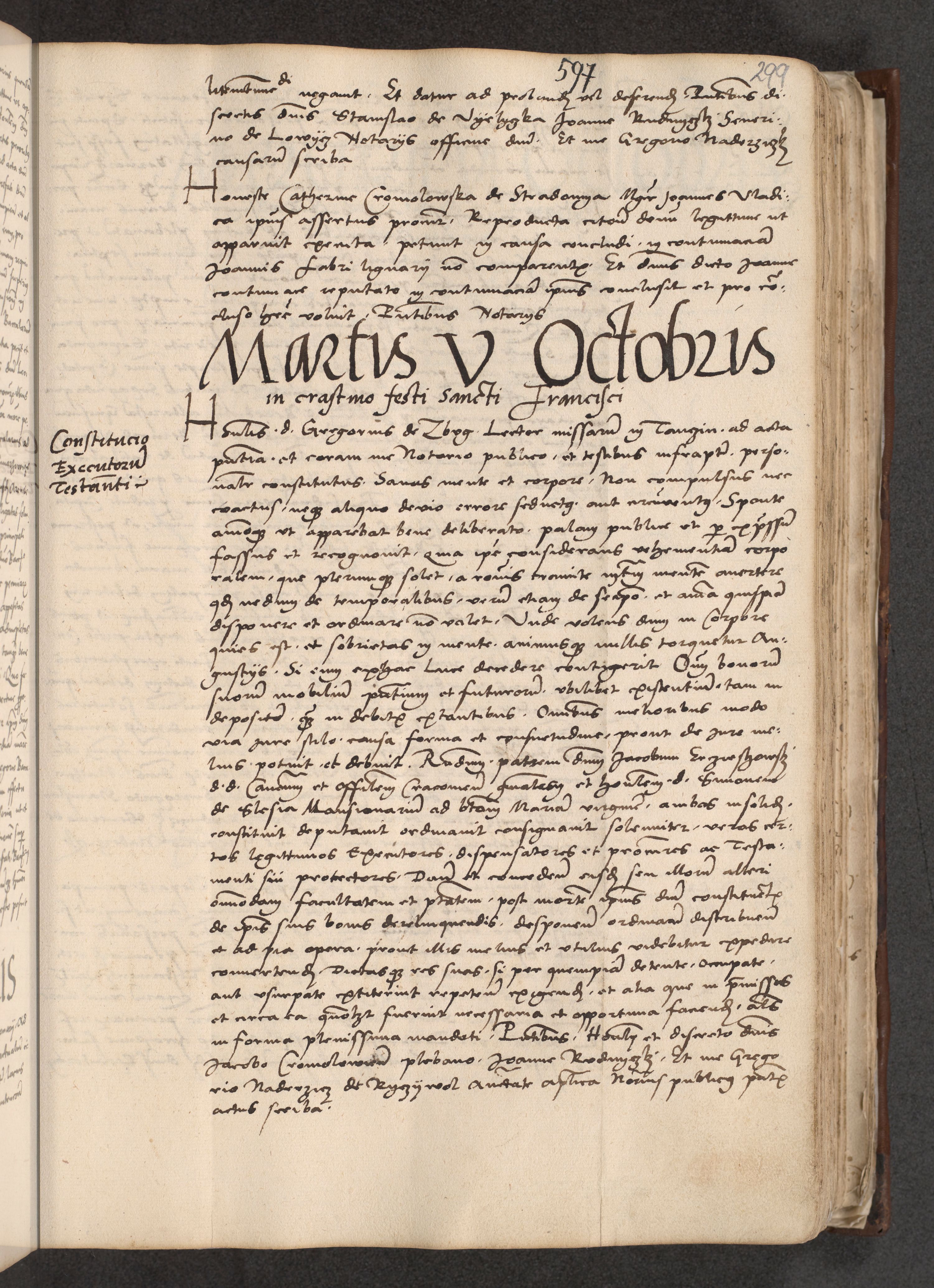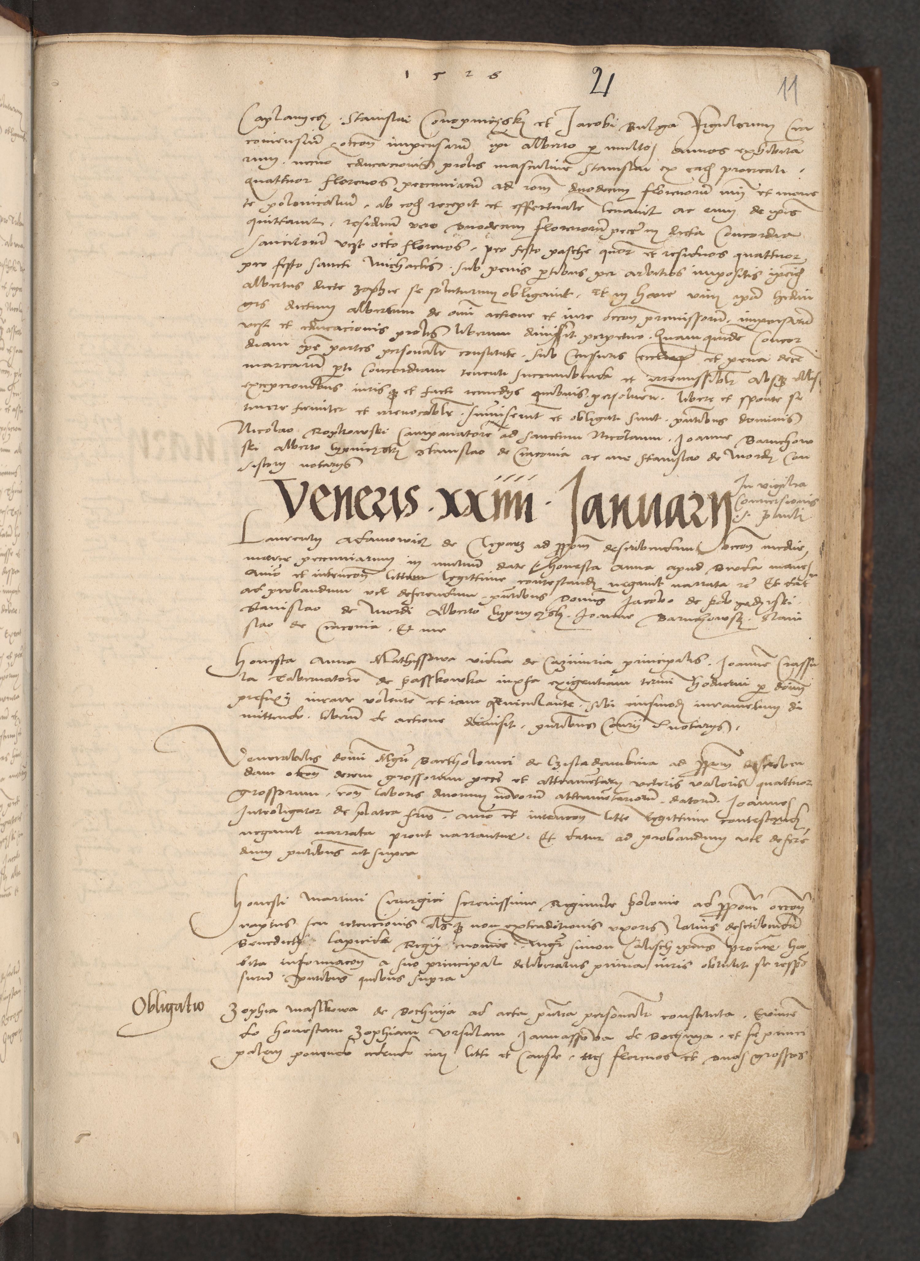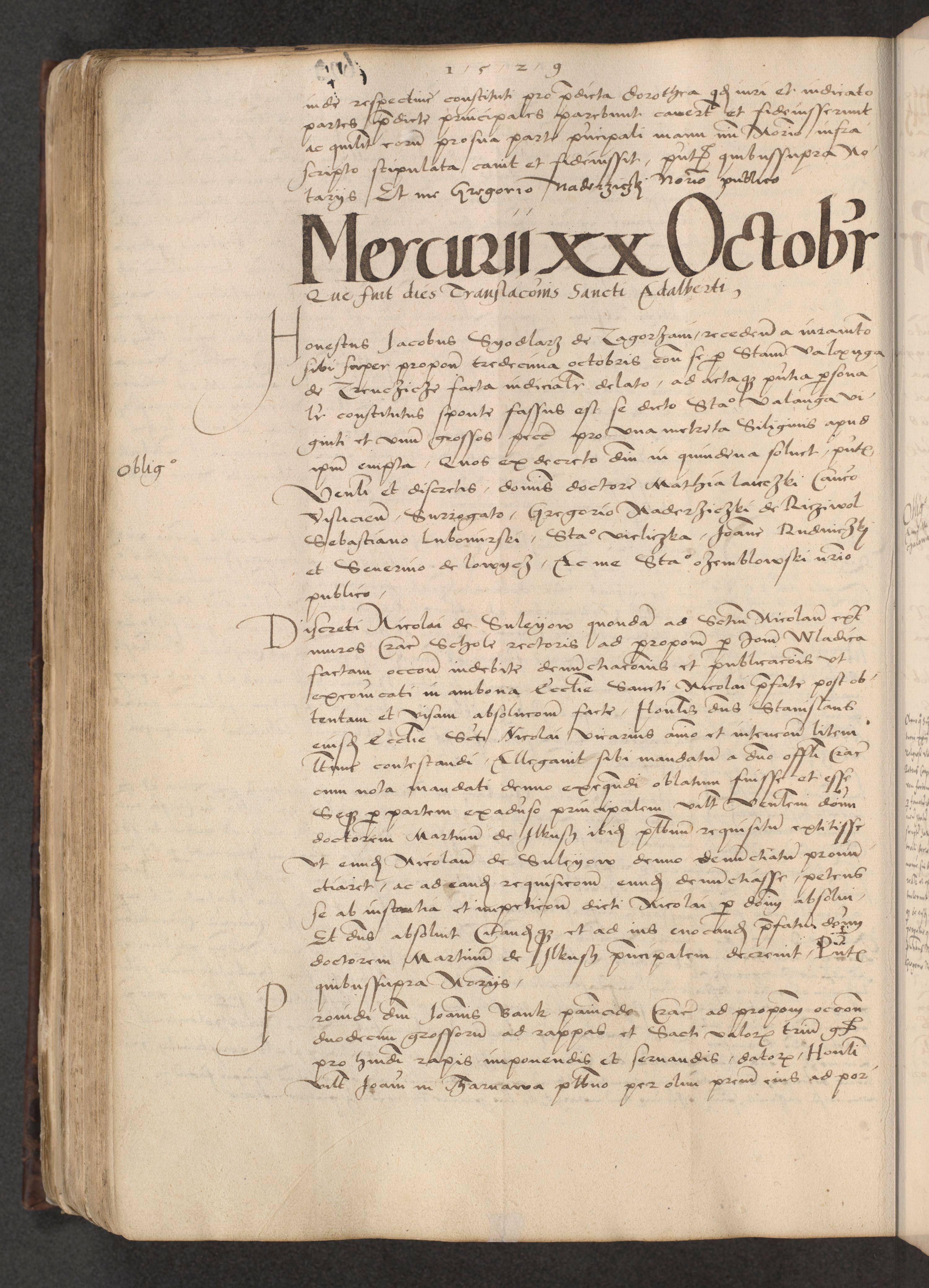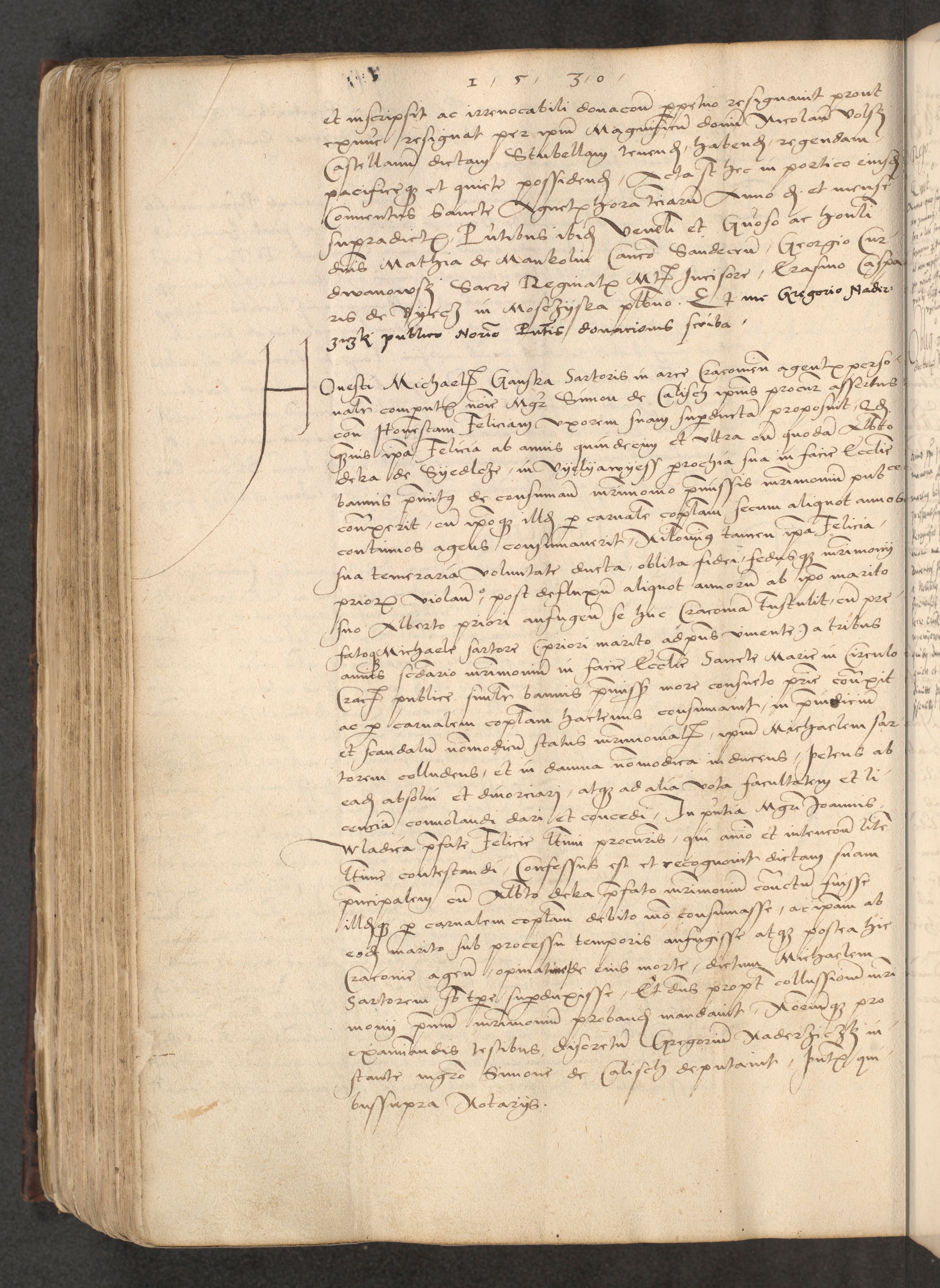 INRI. Acta actorum, obligacionum et sentenciarum tam interlocutoriarum quam diffinitivarum coram reverendo patre ac egregio viro domino Jacobo Erciss[o]wski decretorum doctorem, canonico et officiali generali Cracoviensi ad annum Domini 1528, indicionem primam, pontificatus sanctissimi in Christo patris et domini domini Clementis divina probidendcia pape seprtimi, annum quintum, per Stanislaum de Mordi legalem consistorii notarium omine felici inchoantur