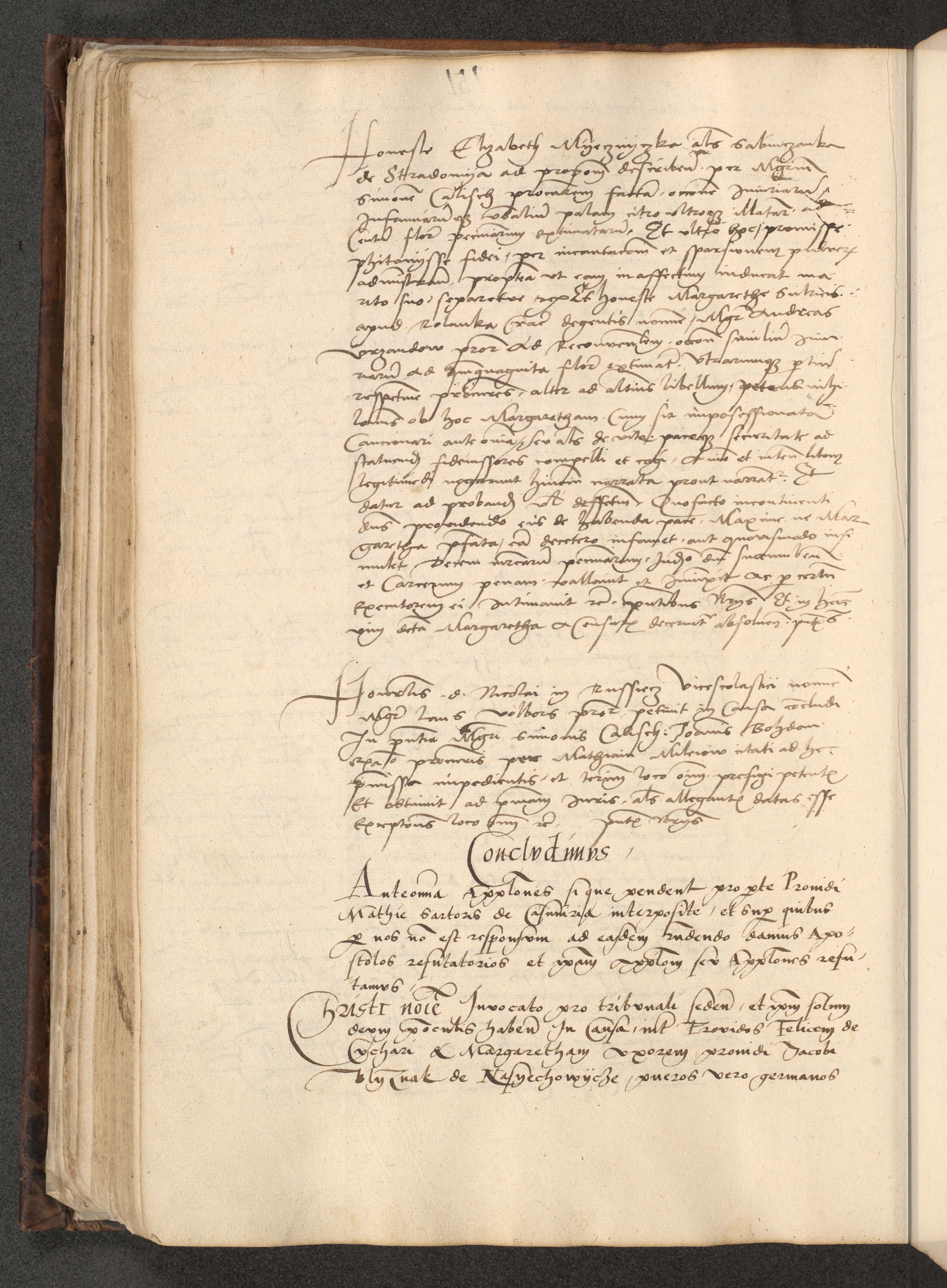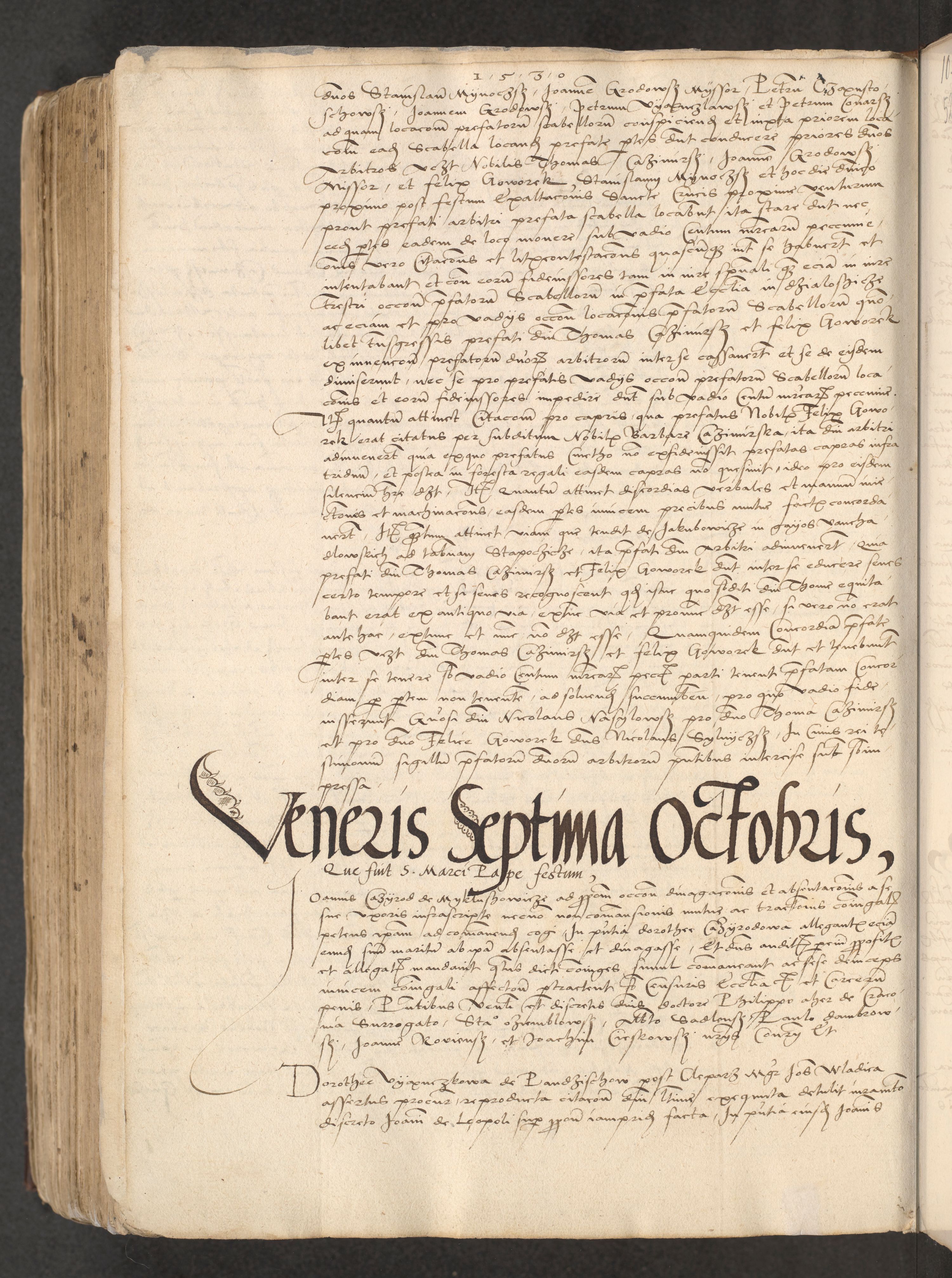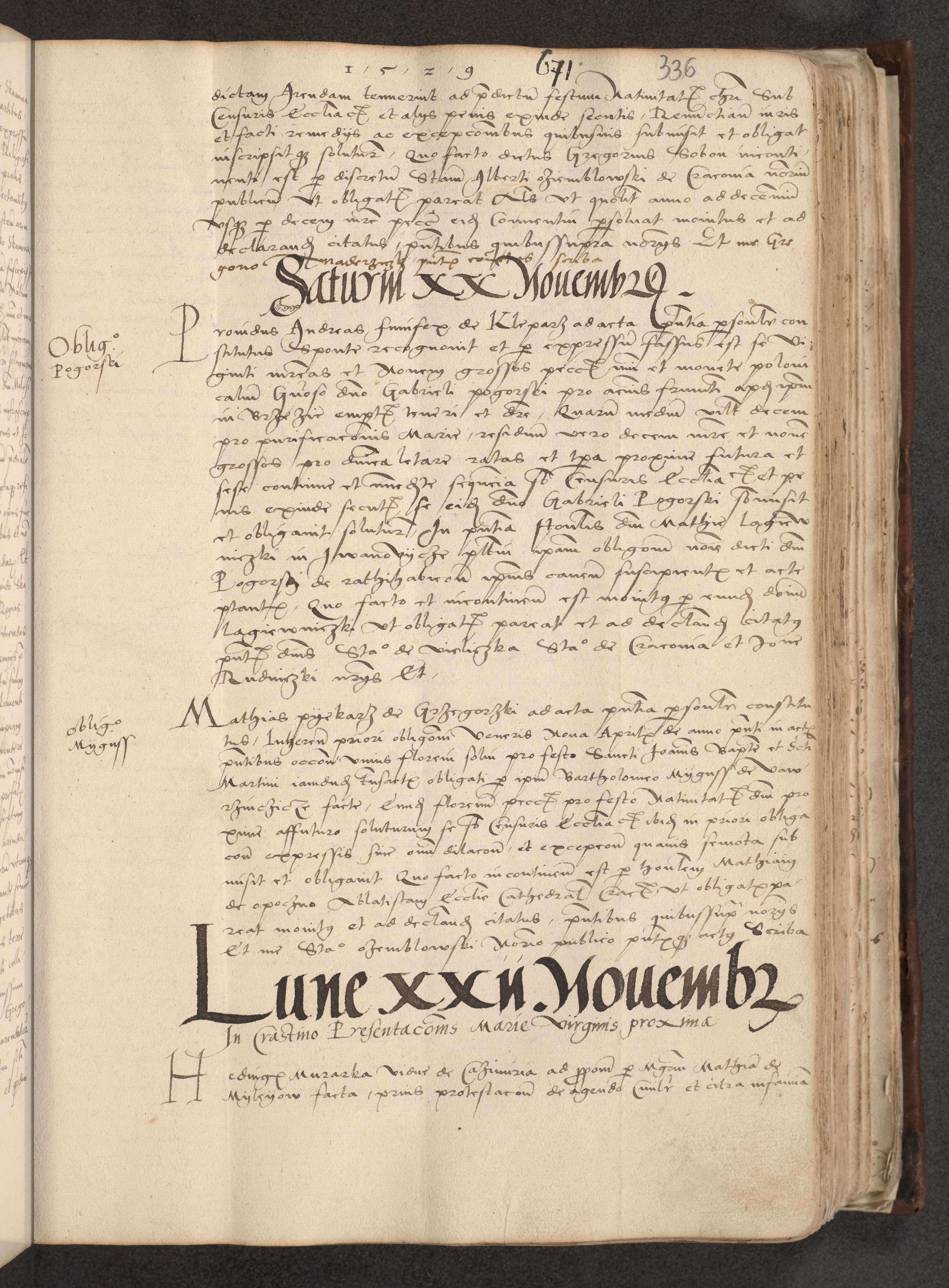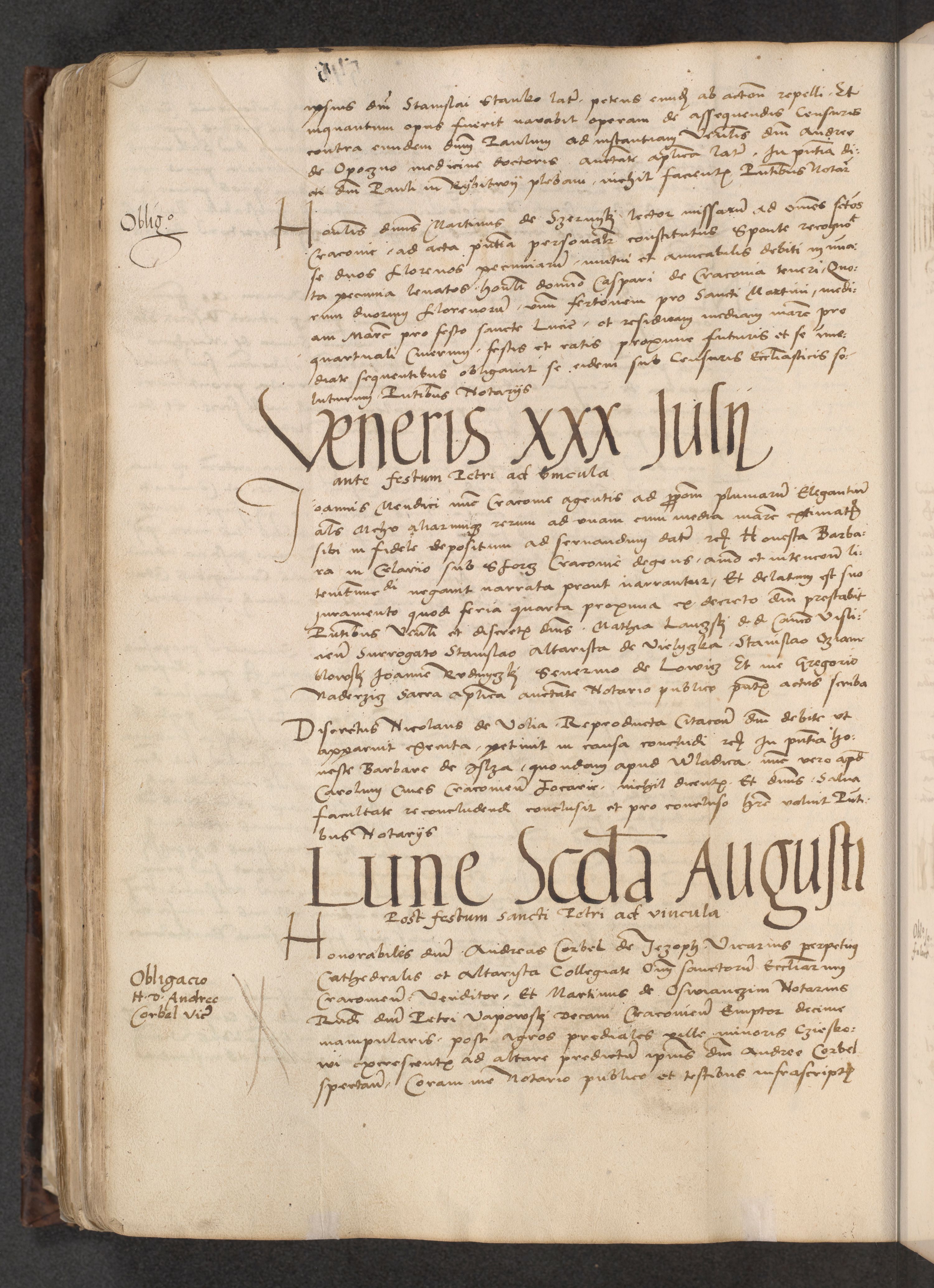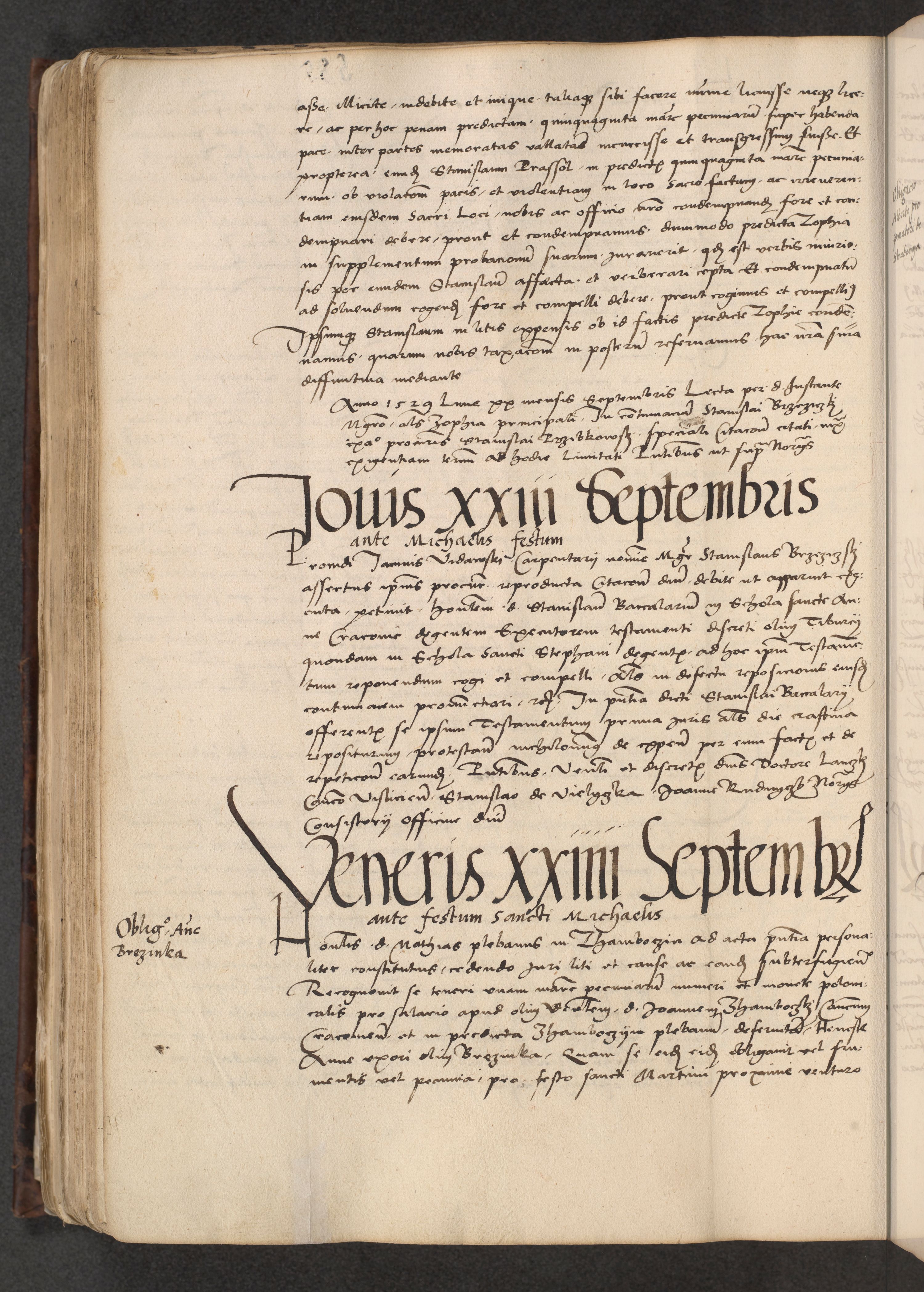 INRI. Acta actorum, obligacionum et sentenciarum tam interlocutoriarum quam diffinitivarum coram reverendo patre ac egregio viro domino Jacobo Erciss[o]wski decretorum doctorem, canonico et officiali generali Cracoviensi ad annum Domini 1528, indicionem primam, pontificatus sanctissimi in Christo patris et domini domini Clementis divina probidendcia pape seprtimi, annum quintum, per Stanislaum de Mordi legalem consistorii notarium omine felici inchoantur