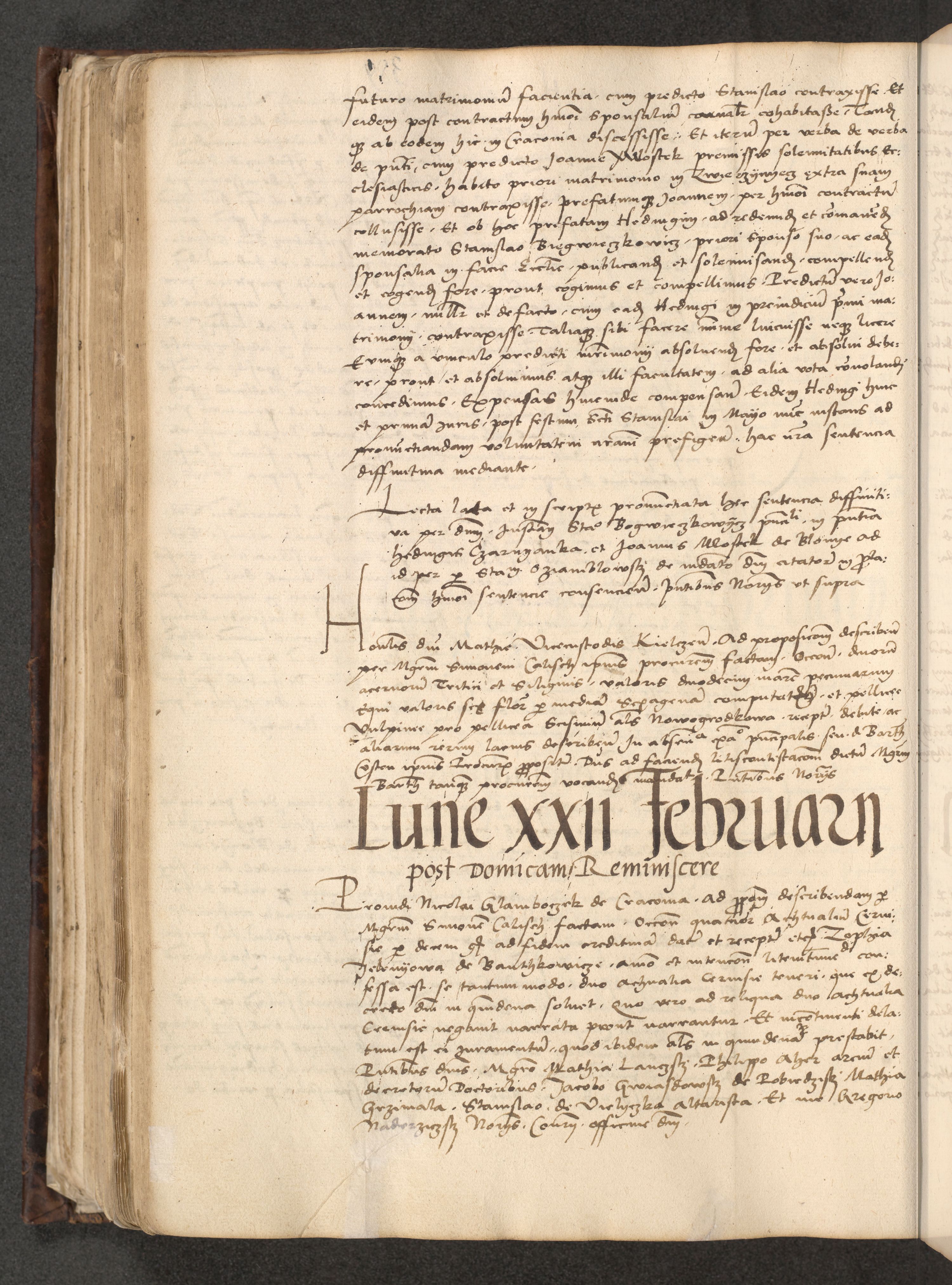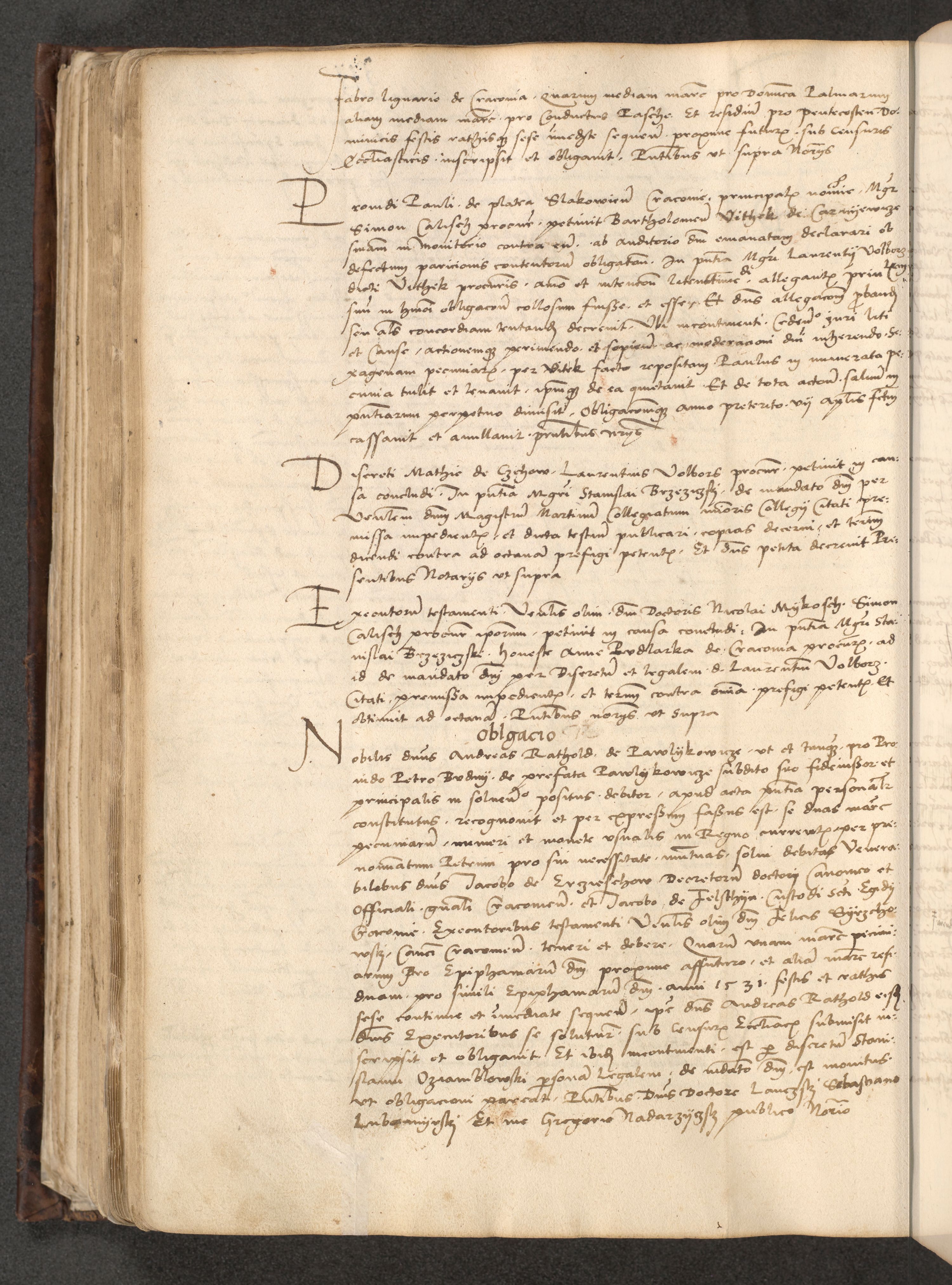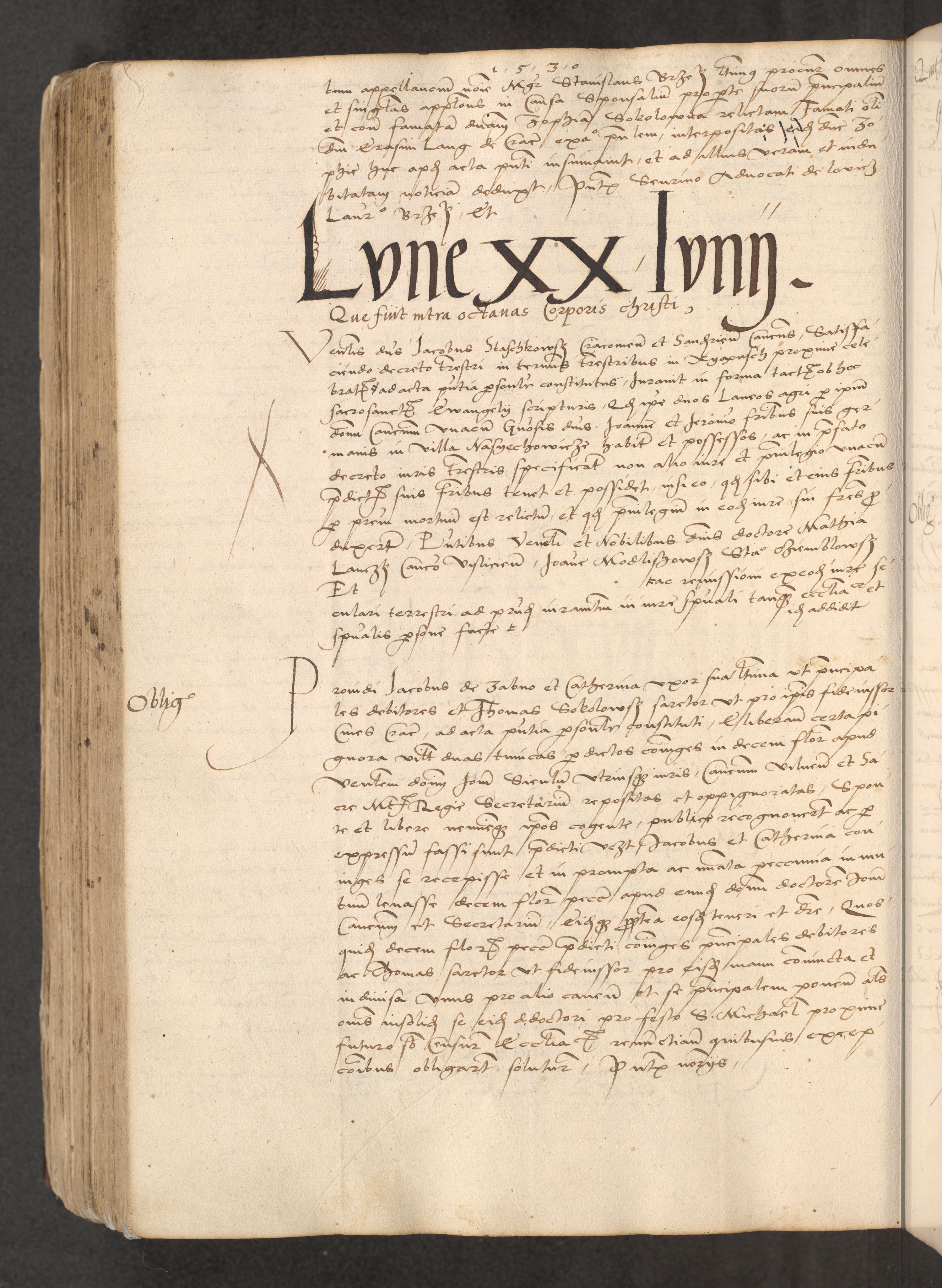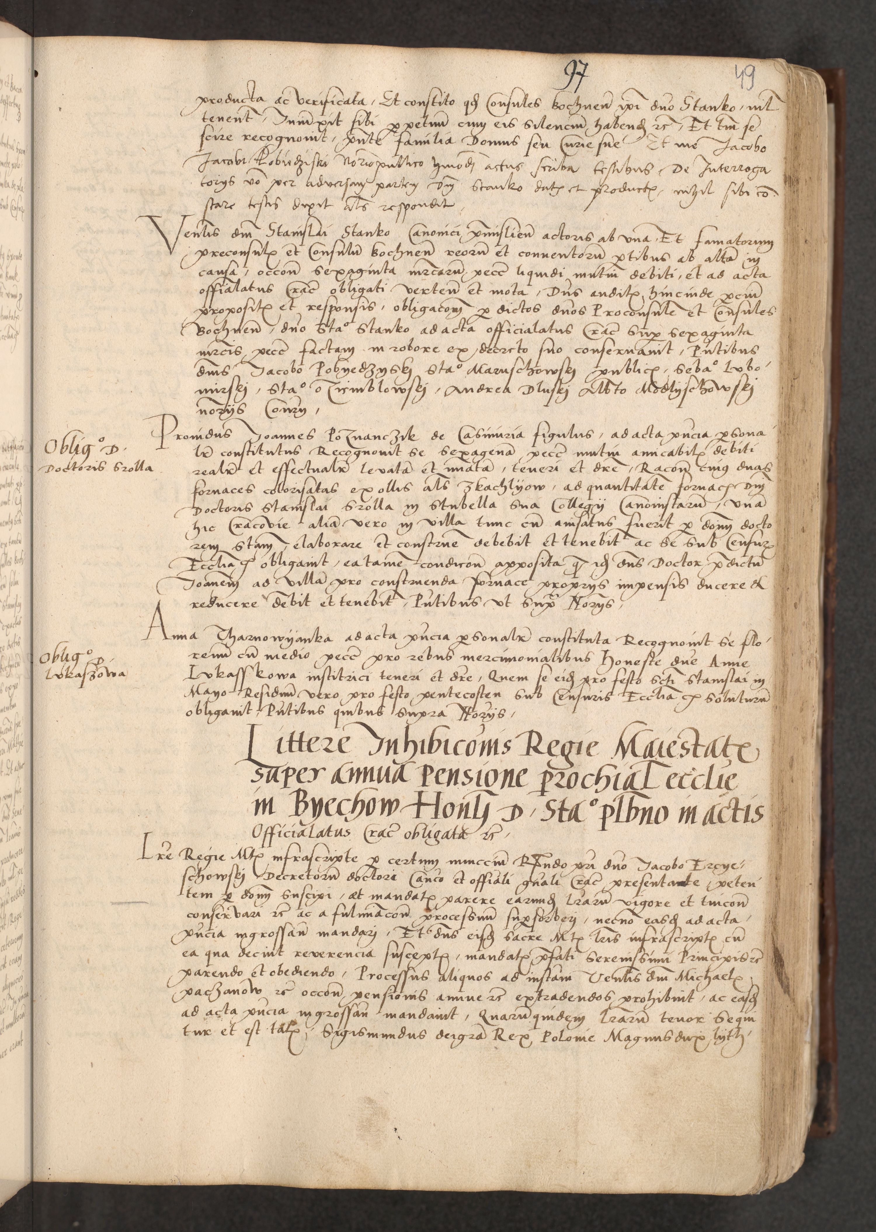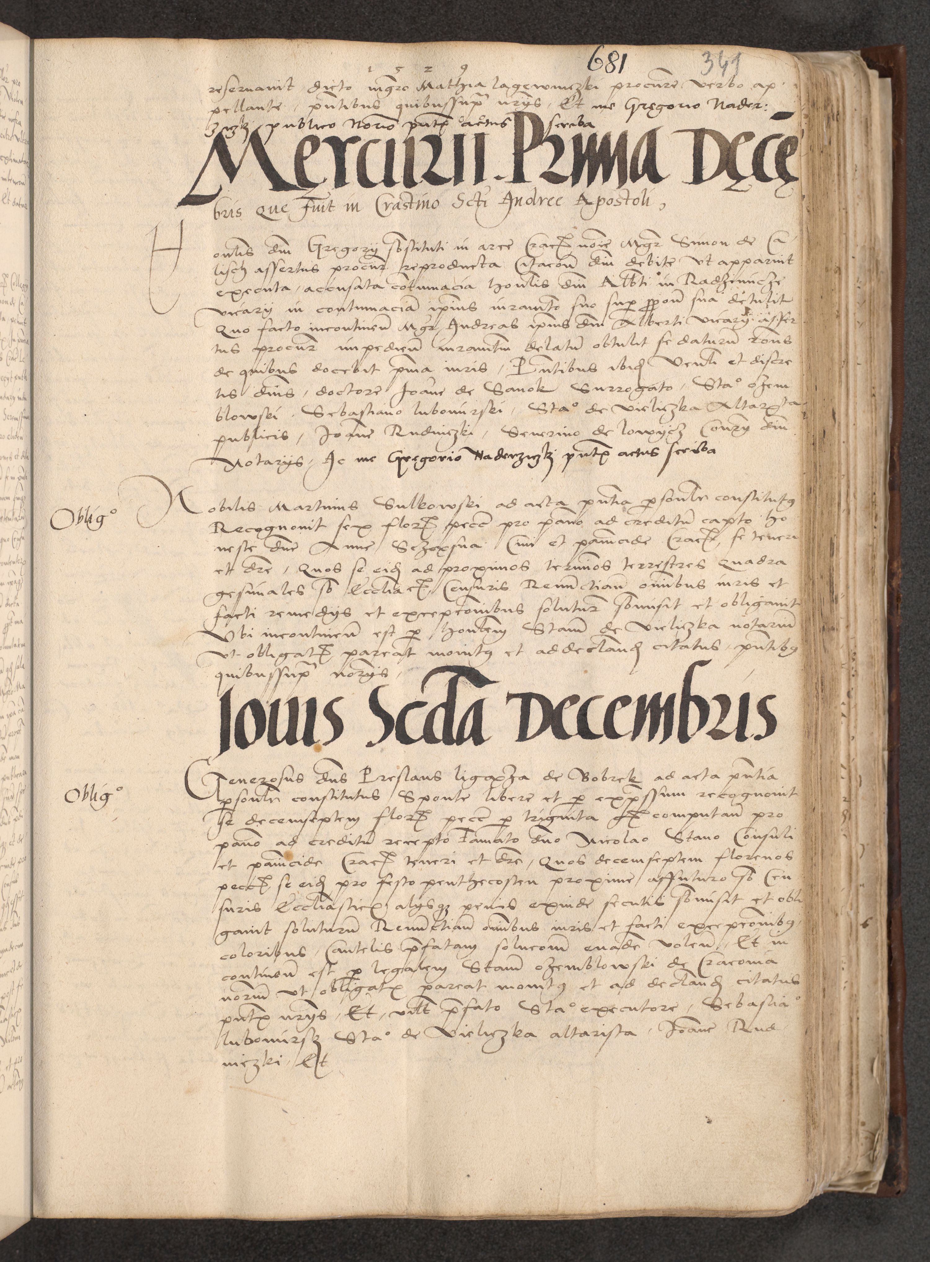 INRI. Acta actorum, obligacionum et sentenciarum tam interlocutoriarum quam diffinitivarum coram reverendo patre ac egregio viro domino Jacobo Erciss[o]wski decretorum doctorem, canonico et officiali generali Cracoviensi ad annum Domini 1528, indicionem primam, pontificatus sanctissimi in Christo patris et domini domini Clementis divina probidendcia pape seprtimi, annum quintum, per Stanislaum de Mordi legalem consistorii notarium omine felici inchoantur