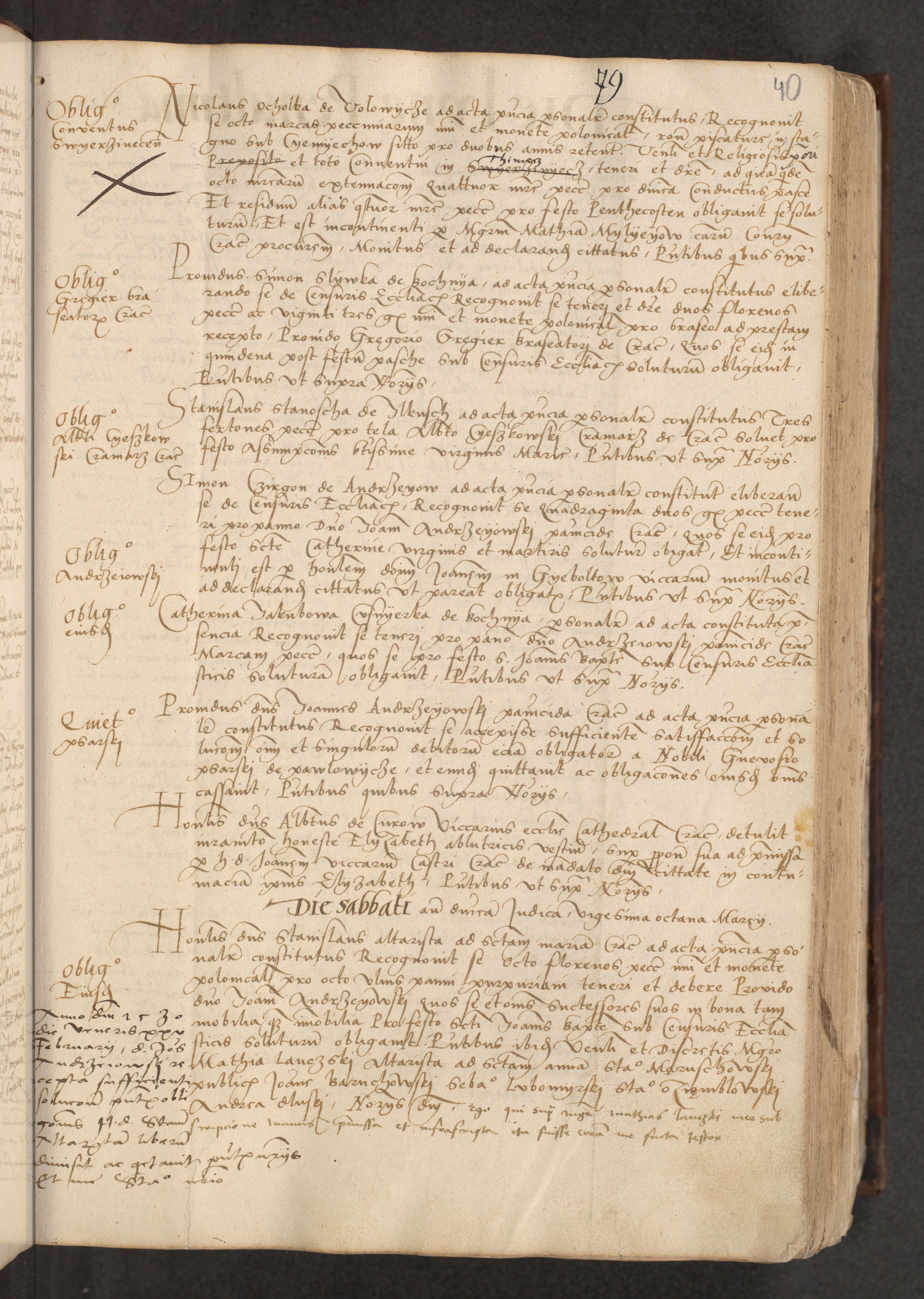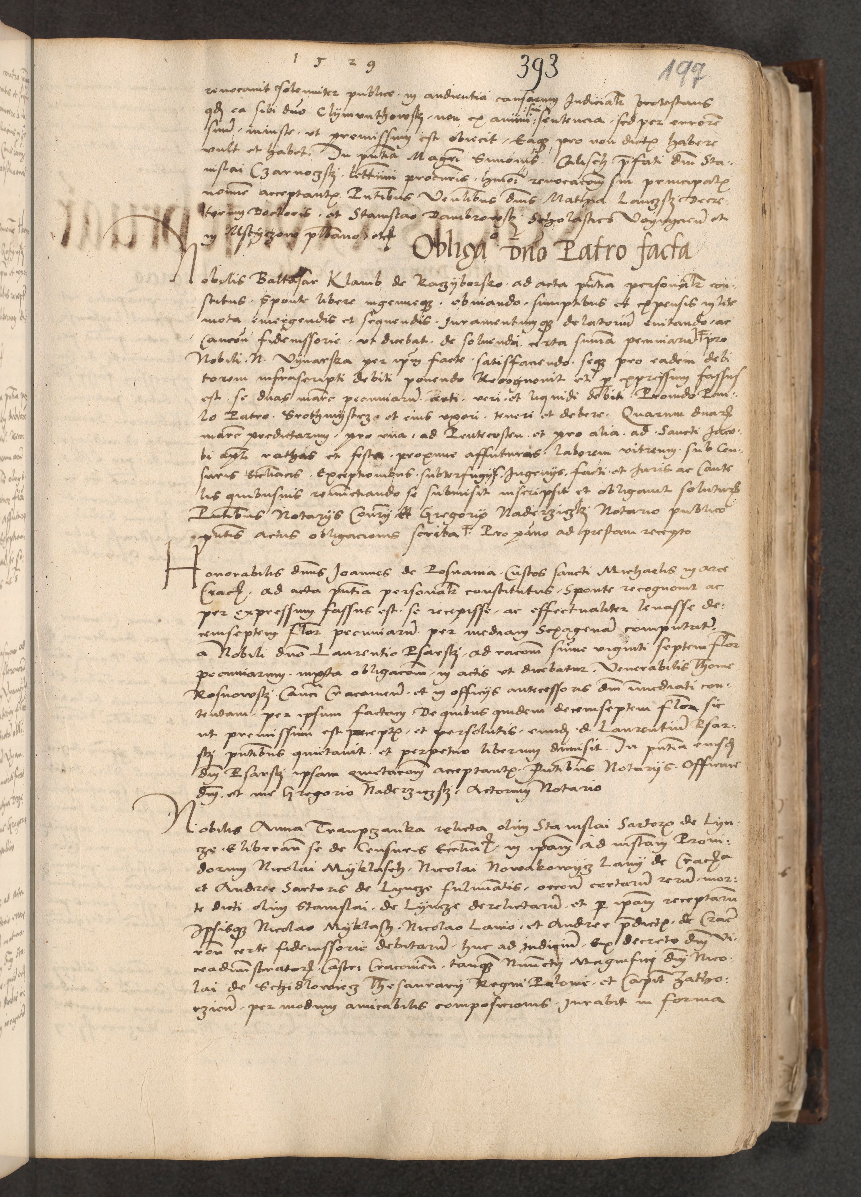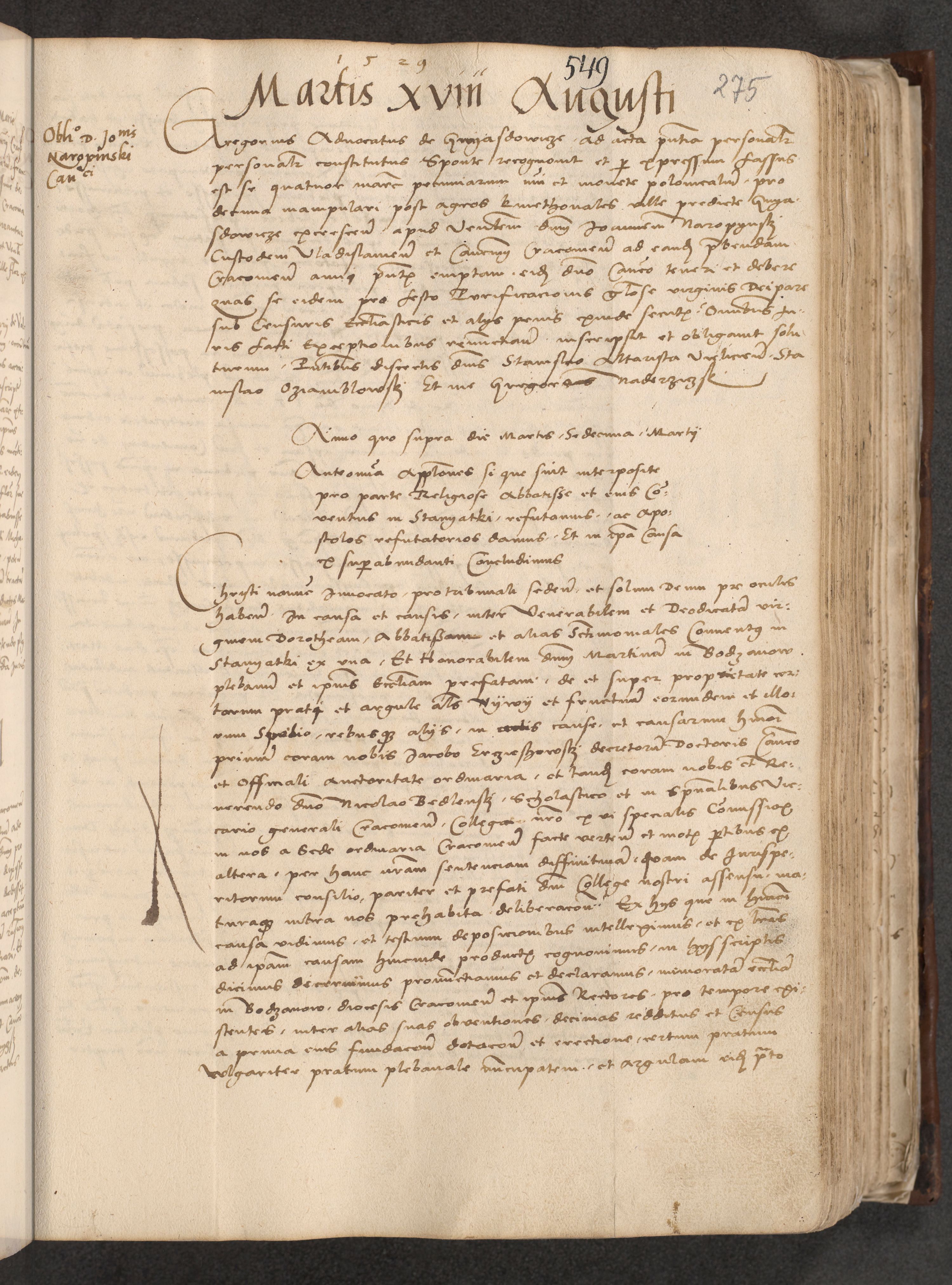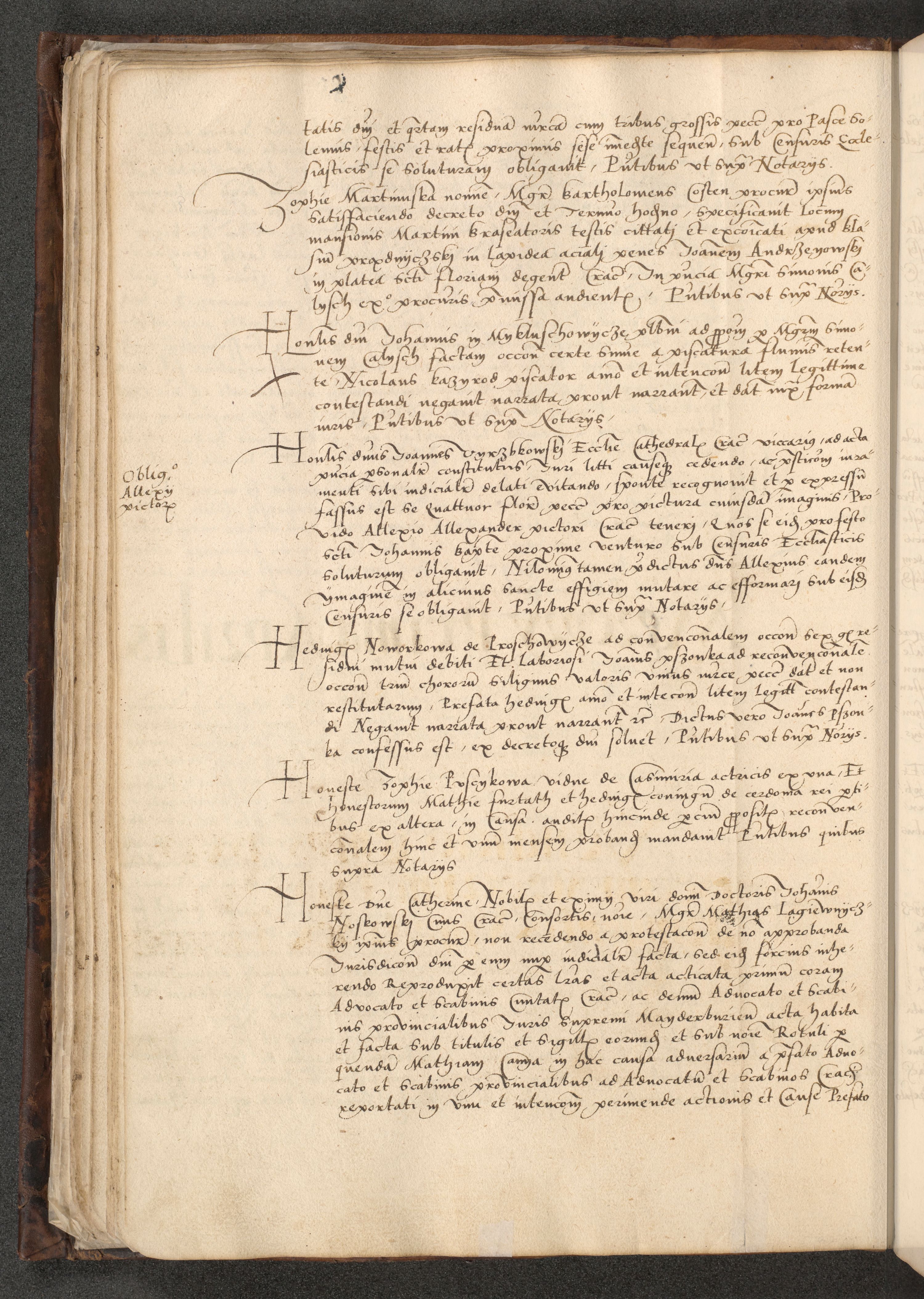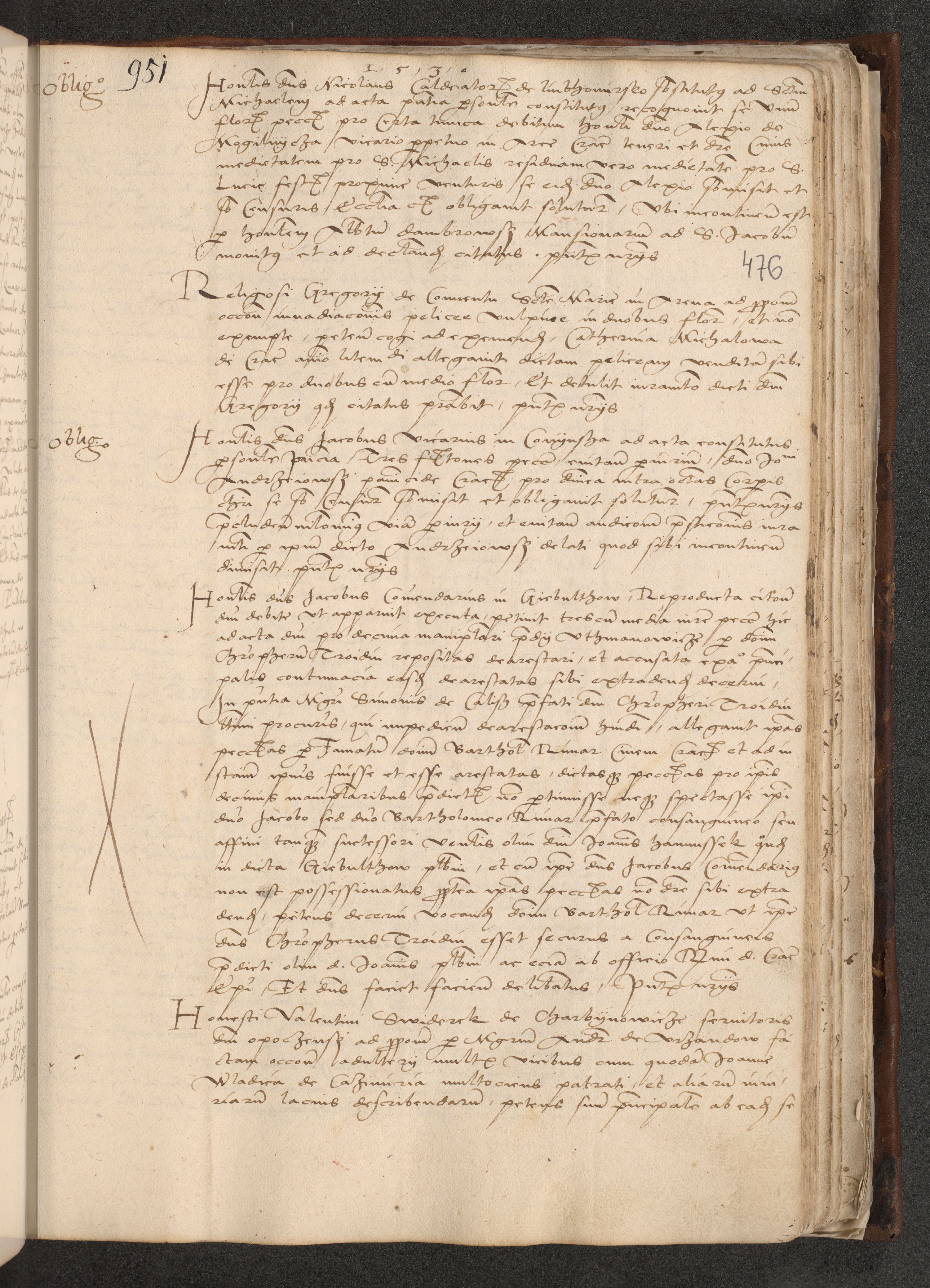 INRI. Acta actorum, obligacionum et sentenciarum tam interlocutoriarum quam diffinitivarum coram reverendo patre ac egregio viro domino Jacobo Erciss[o]wski decretorum doctorem, canonico et officiali generali Cracoviensi ad annum Domini 1528, indicionem primam, pontificatus sanctissimi in Christo patris et domini domini Clementis divina probidendcia pape seprtimi, annum quintum, per Stanislaum de Mordi legalem consistorii notarium omine felici inchoantur