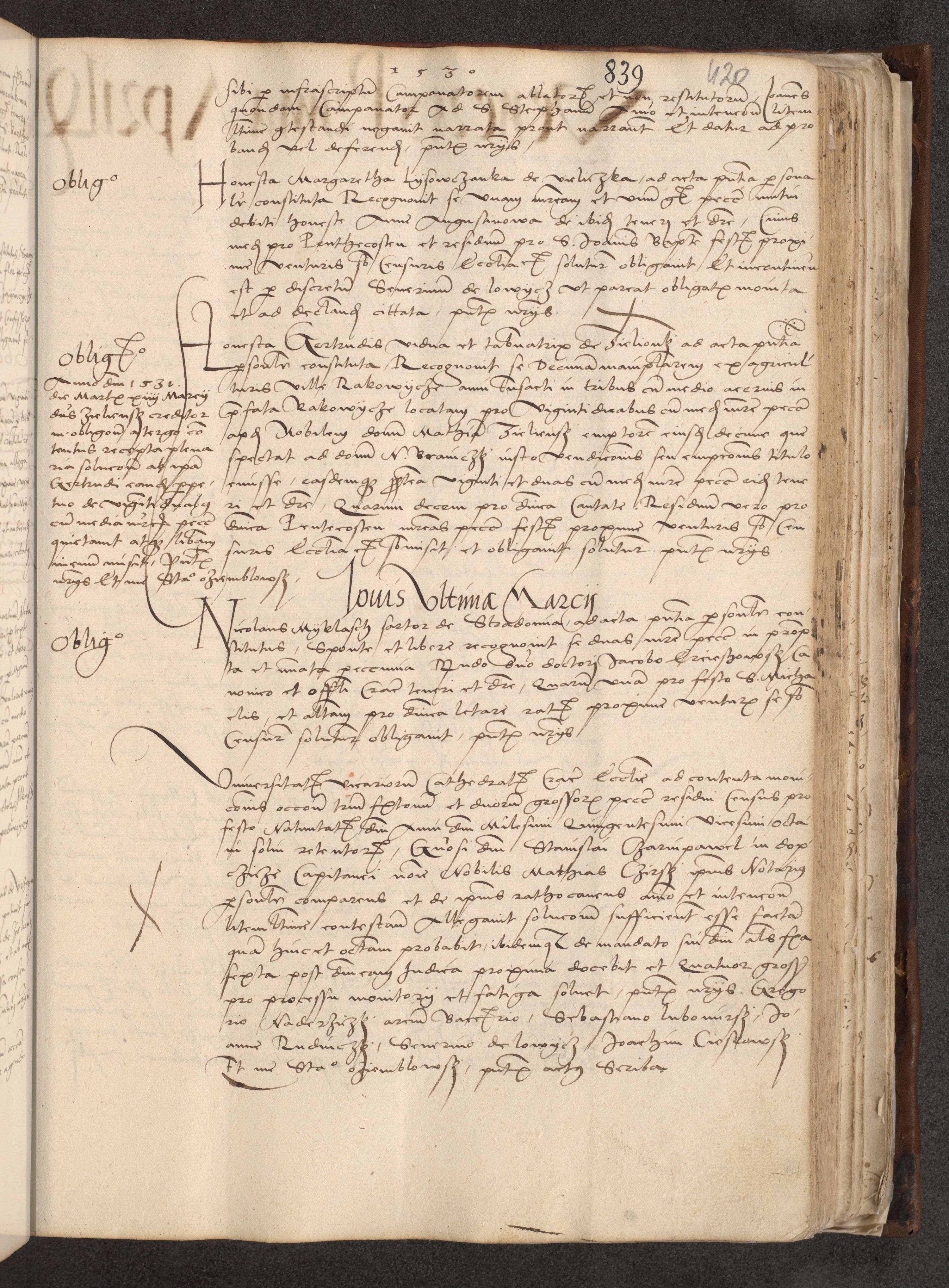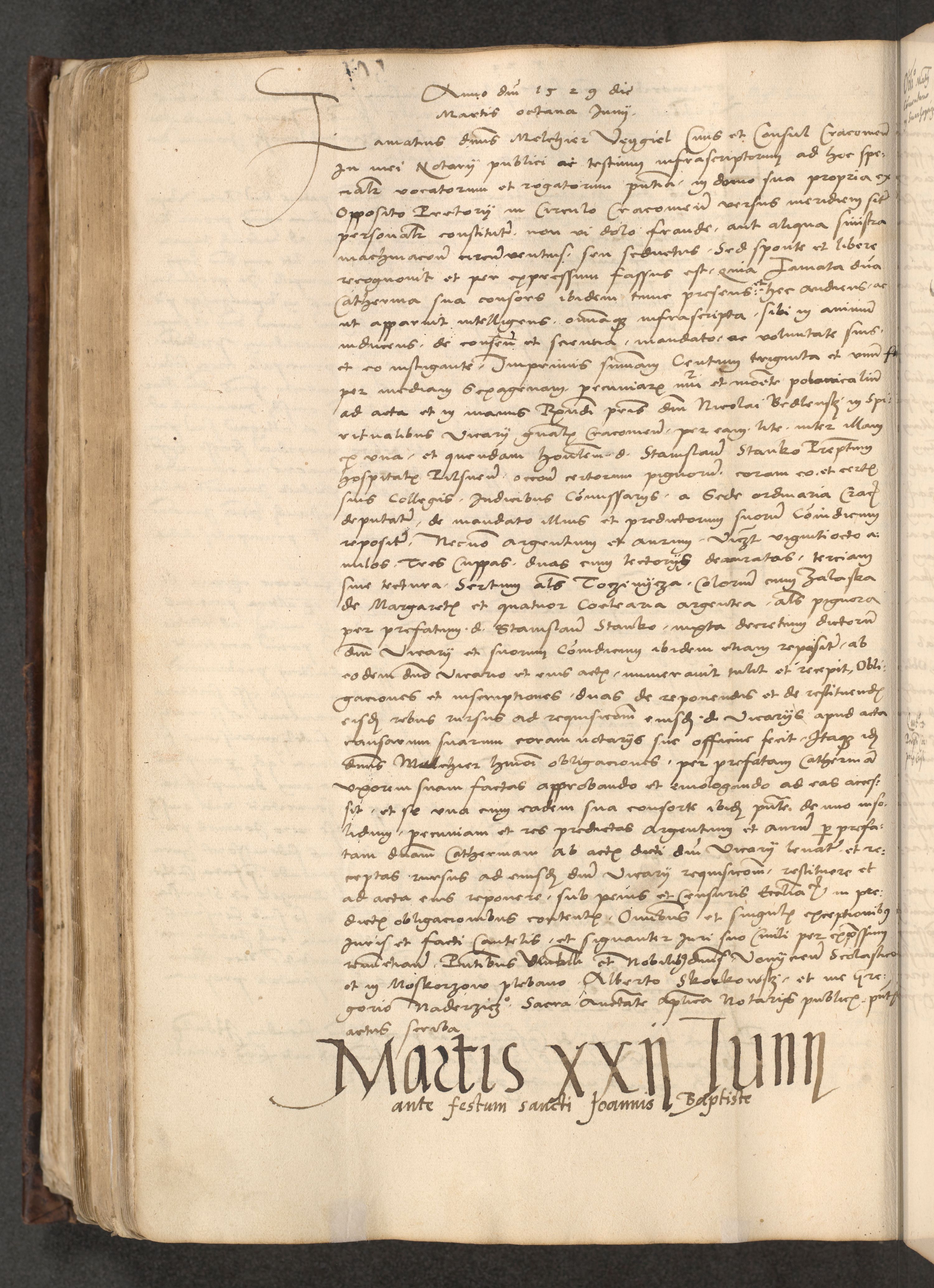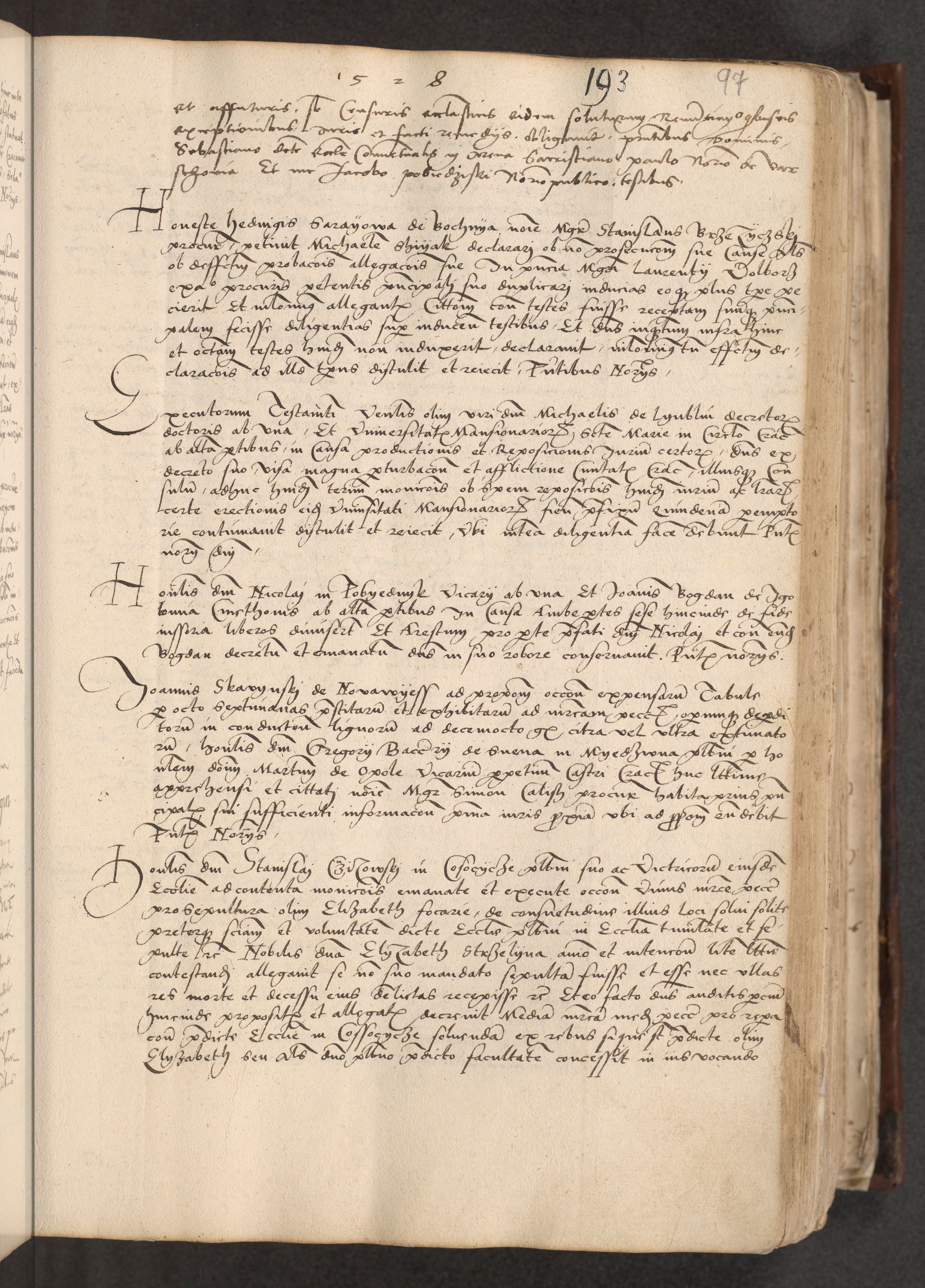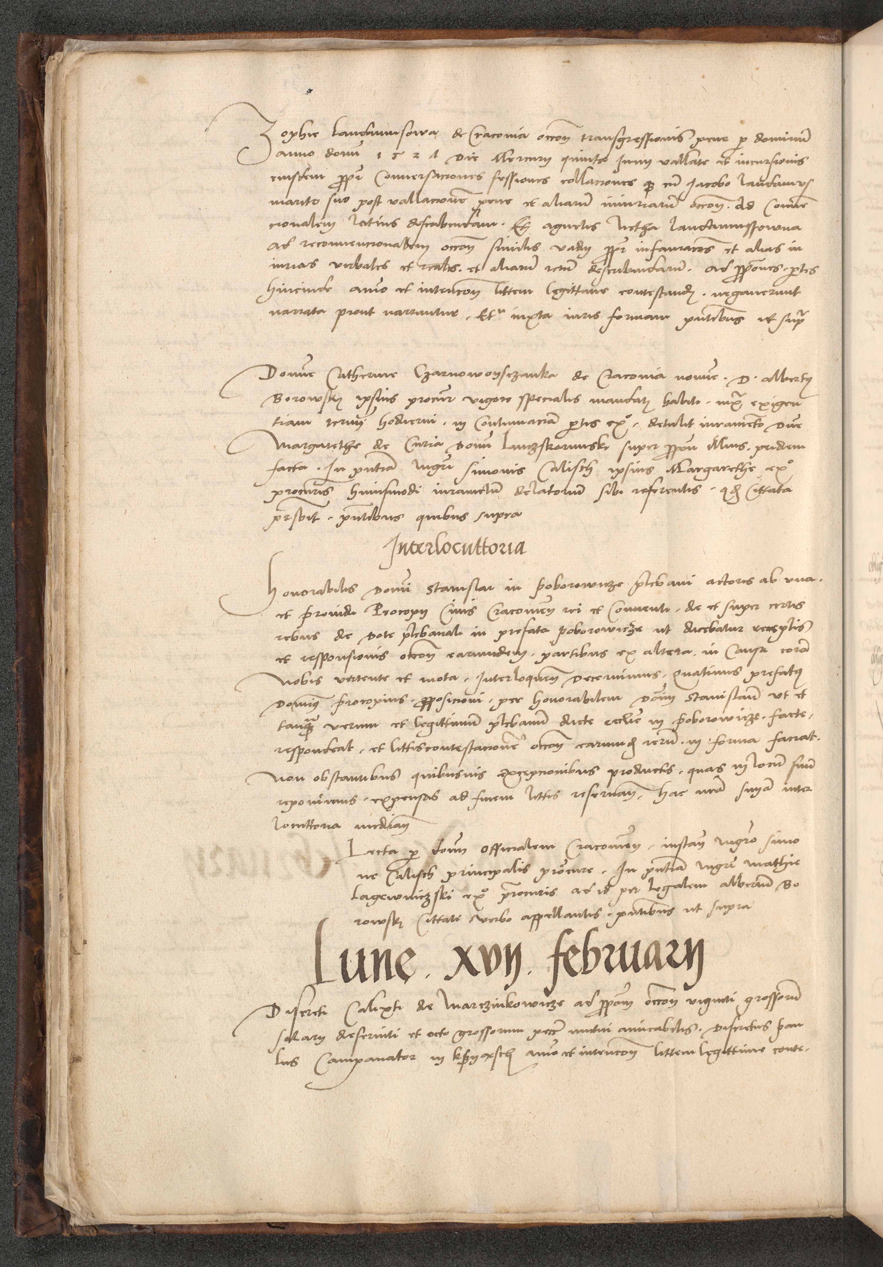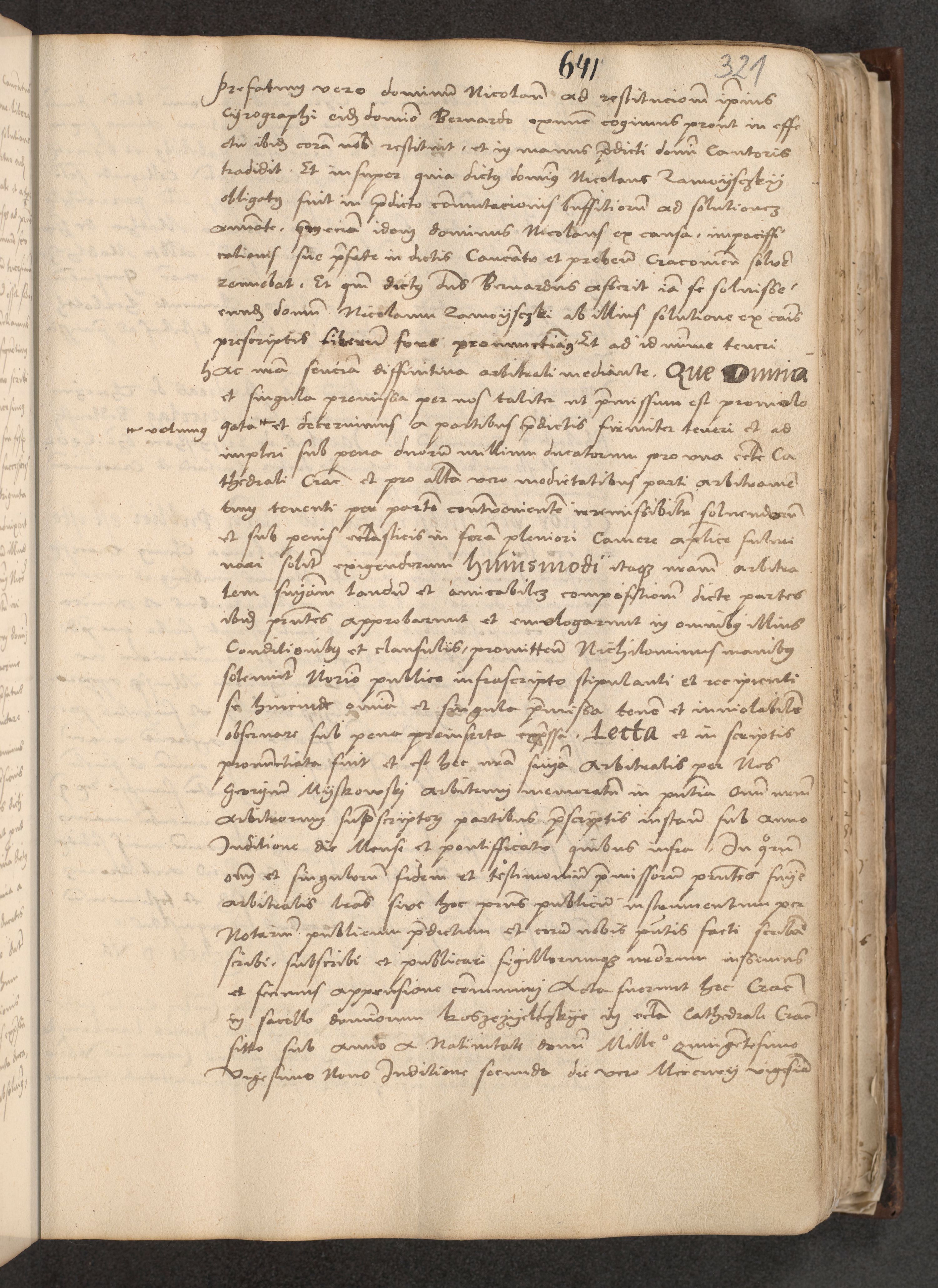 INRI. Acta actorum, obligacionum et sentenciarum tam interlocutoriarum quam diffinitivarum coram reverendo patre ac egregio viro domino Jacobo Erciss[o]wski decretorum doctorem, canonico et officiali generali Cracoviensi ad annum Domini 1528, indicionem primam, pontificatus sanctissimi in Christo patris et domini domini Clementis divina probidendcia pape seprtimi, annum quintum, per Stanislaum de Mordi legalem consistorii notarium omine felici inchoantur