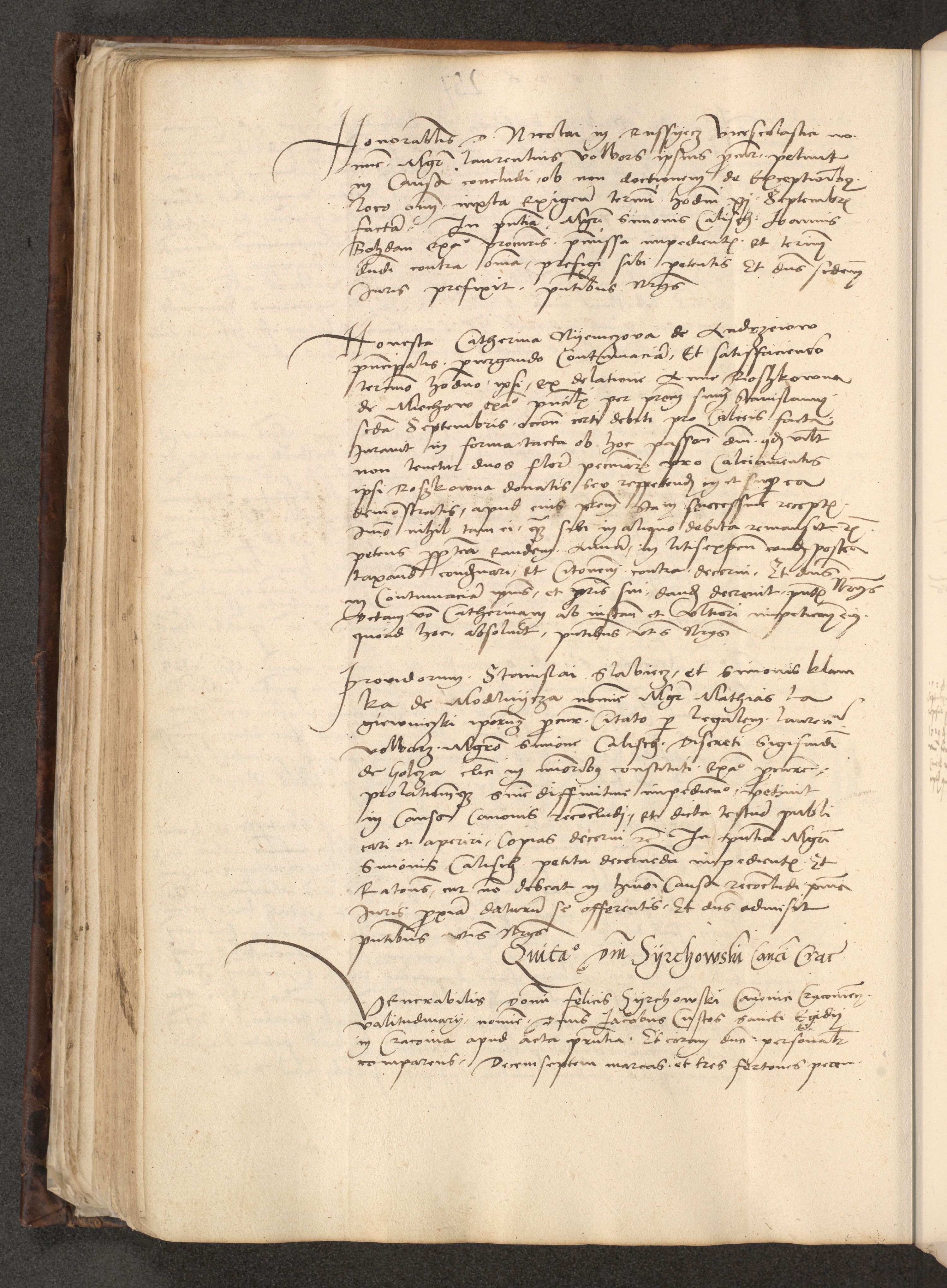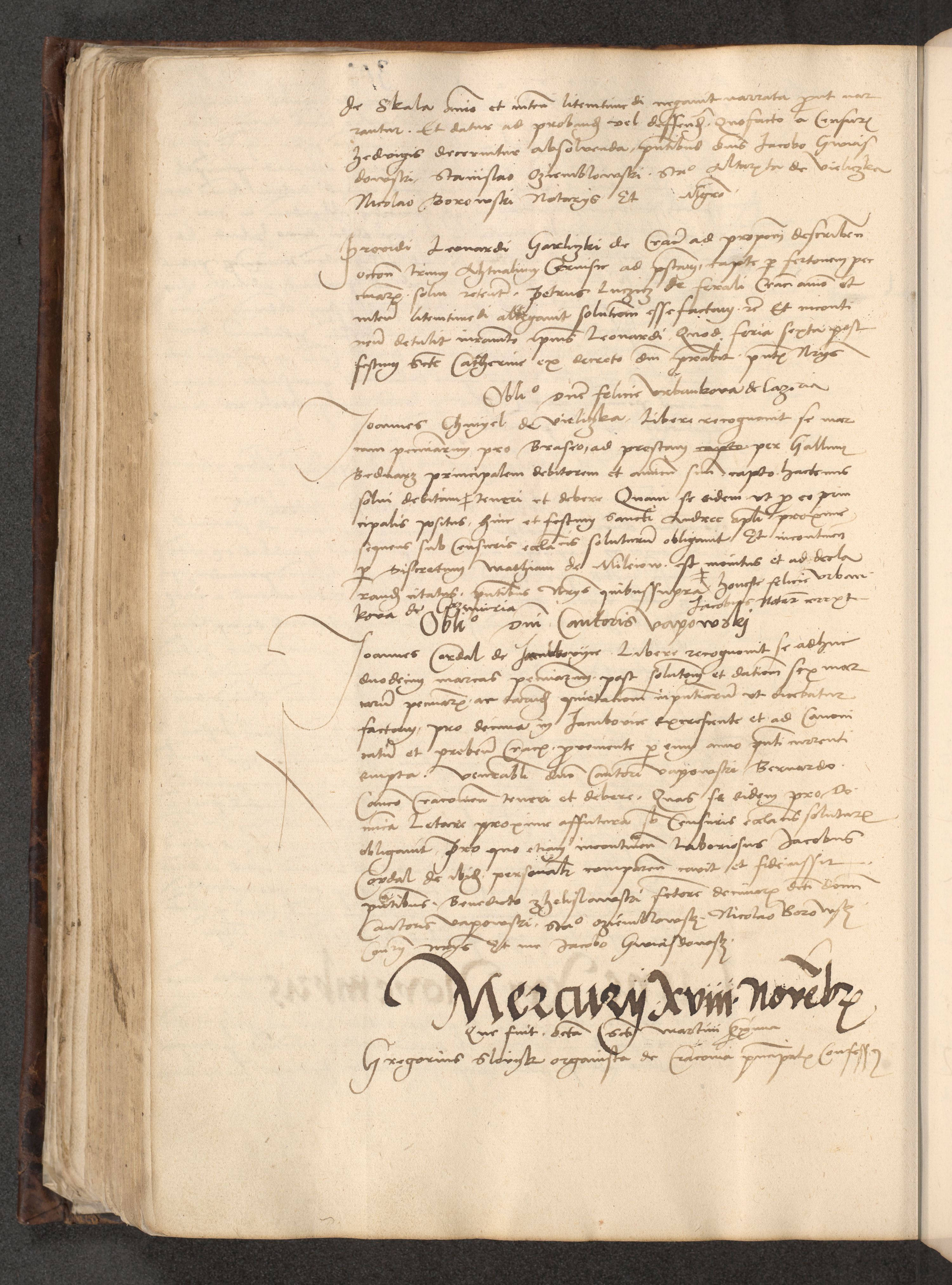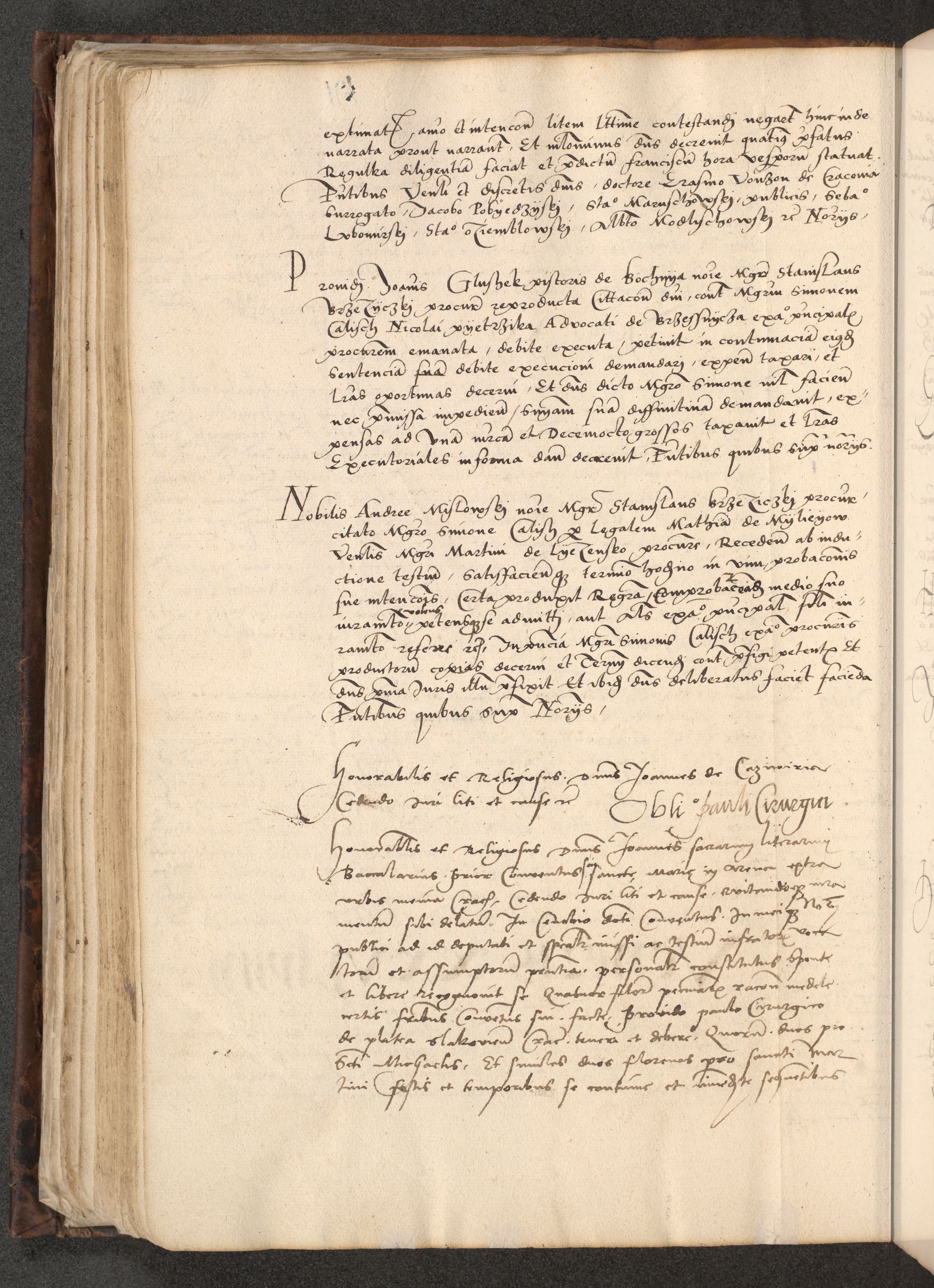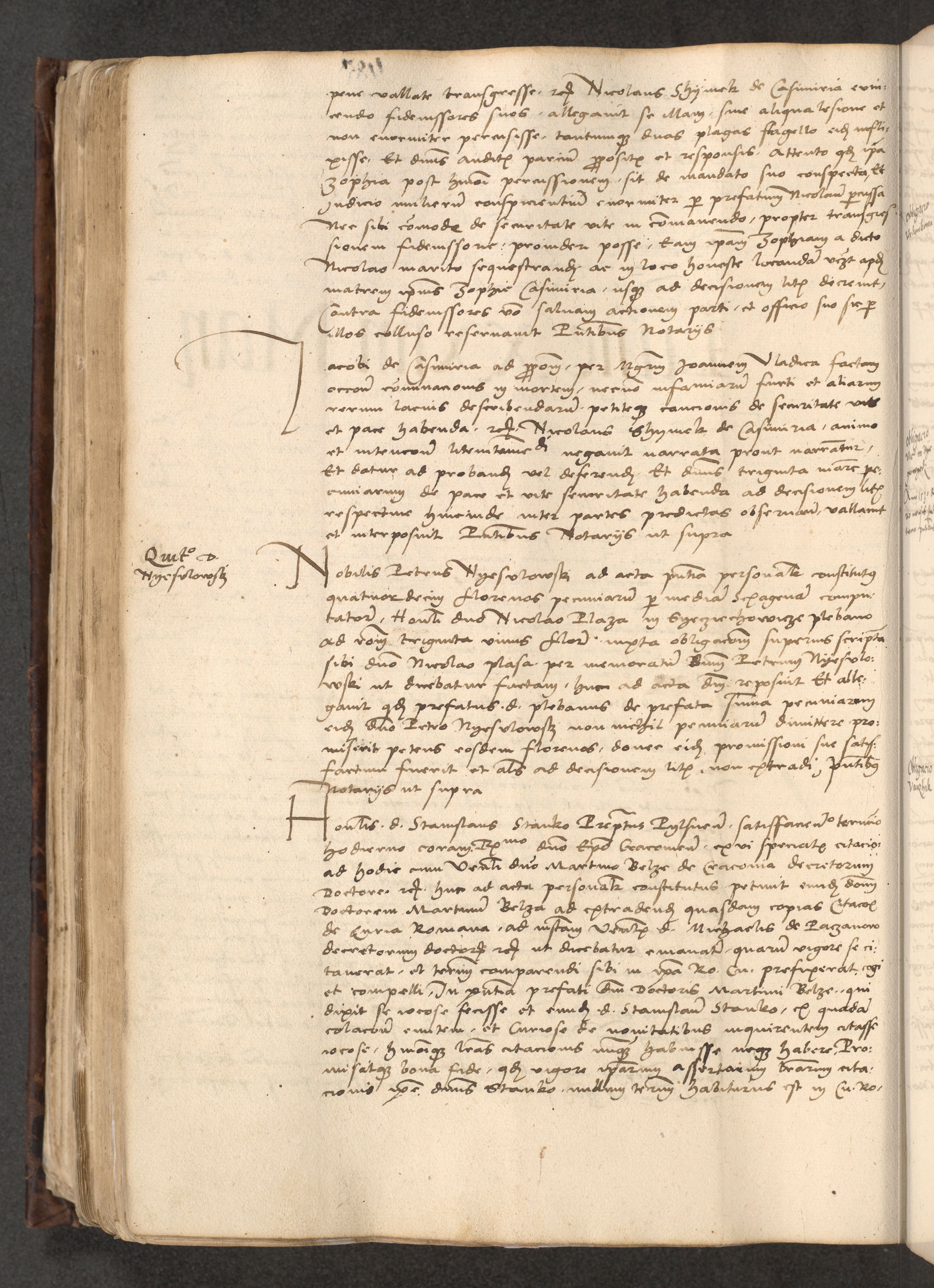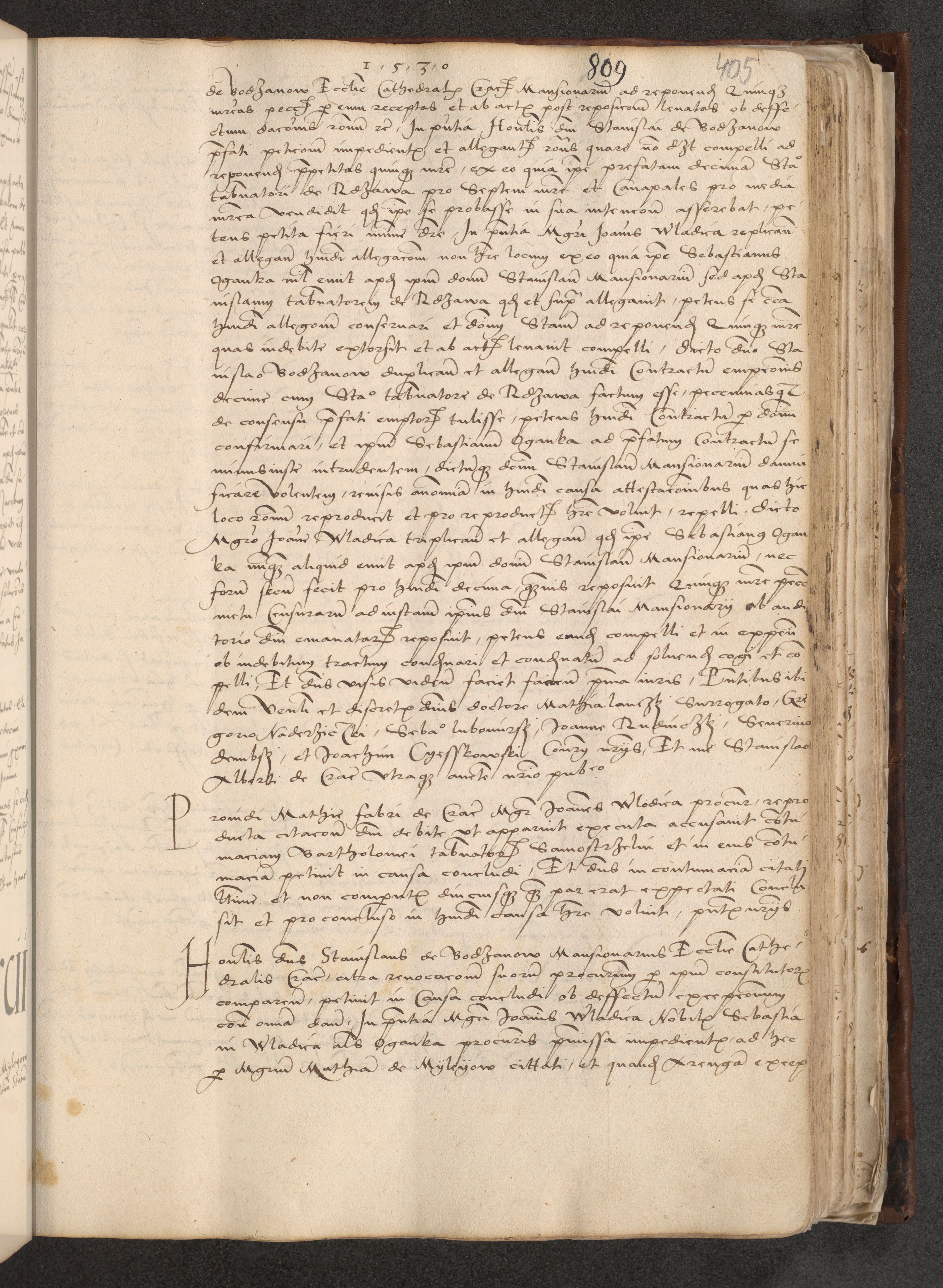 INRI. Acta actorum, obligacionum et sentenciarum tam interlocutoriarum quam diffinitivarum coram reverendo patre ac egregio viro domino Jacobo Erciss[o]wski decretorum doctorem, canonico et officiali generali Cracoviensi ad annum Domini 1528, indicionem primam, pontificatus sanctissimi in Christo patris et domini domini Clementis divina probidendcia pape seprtimi, annum quintum, per Stanislaum de Mordi legalem consistorii notarium omine felici inchoantur