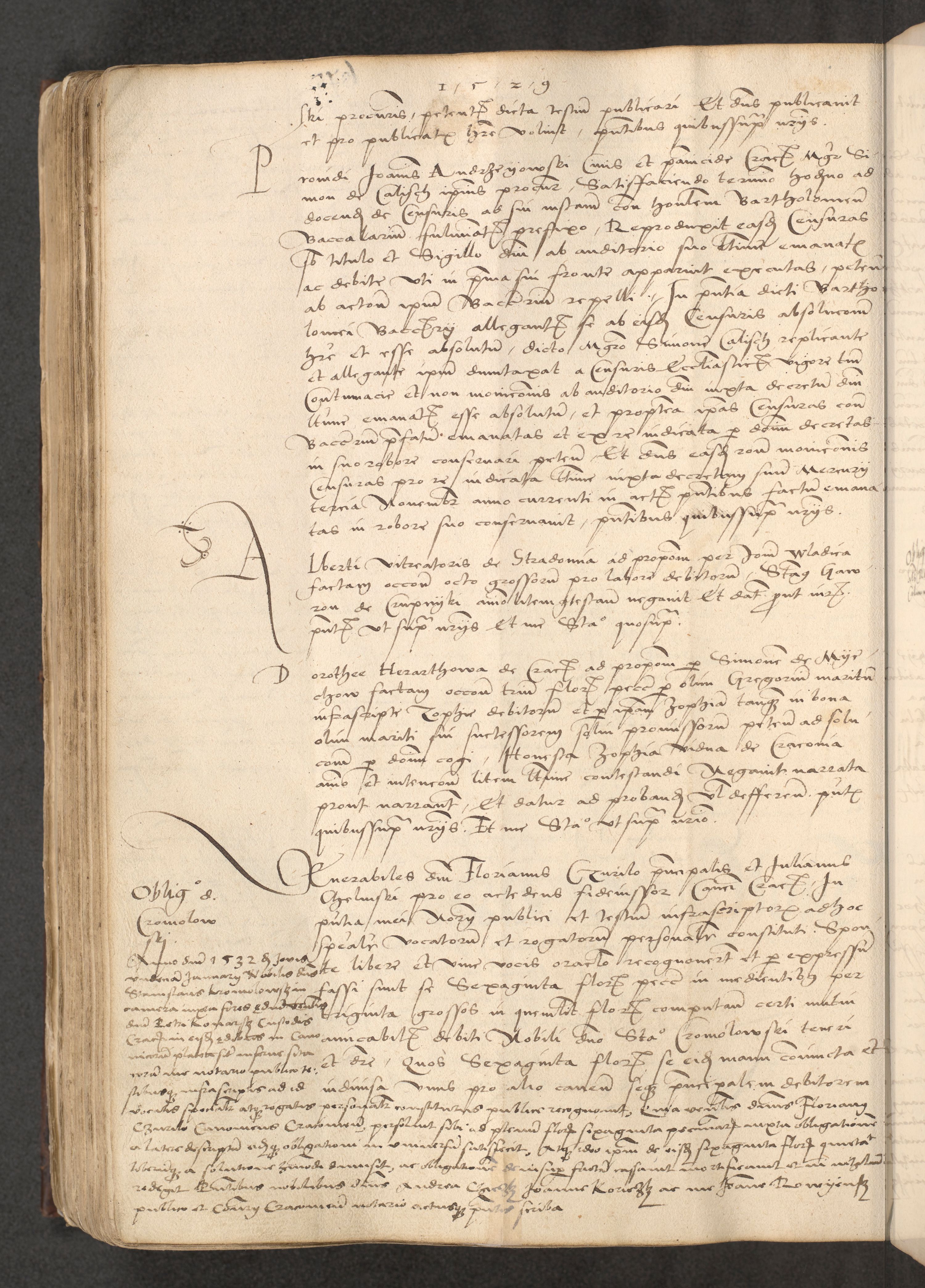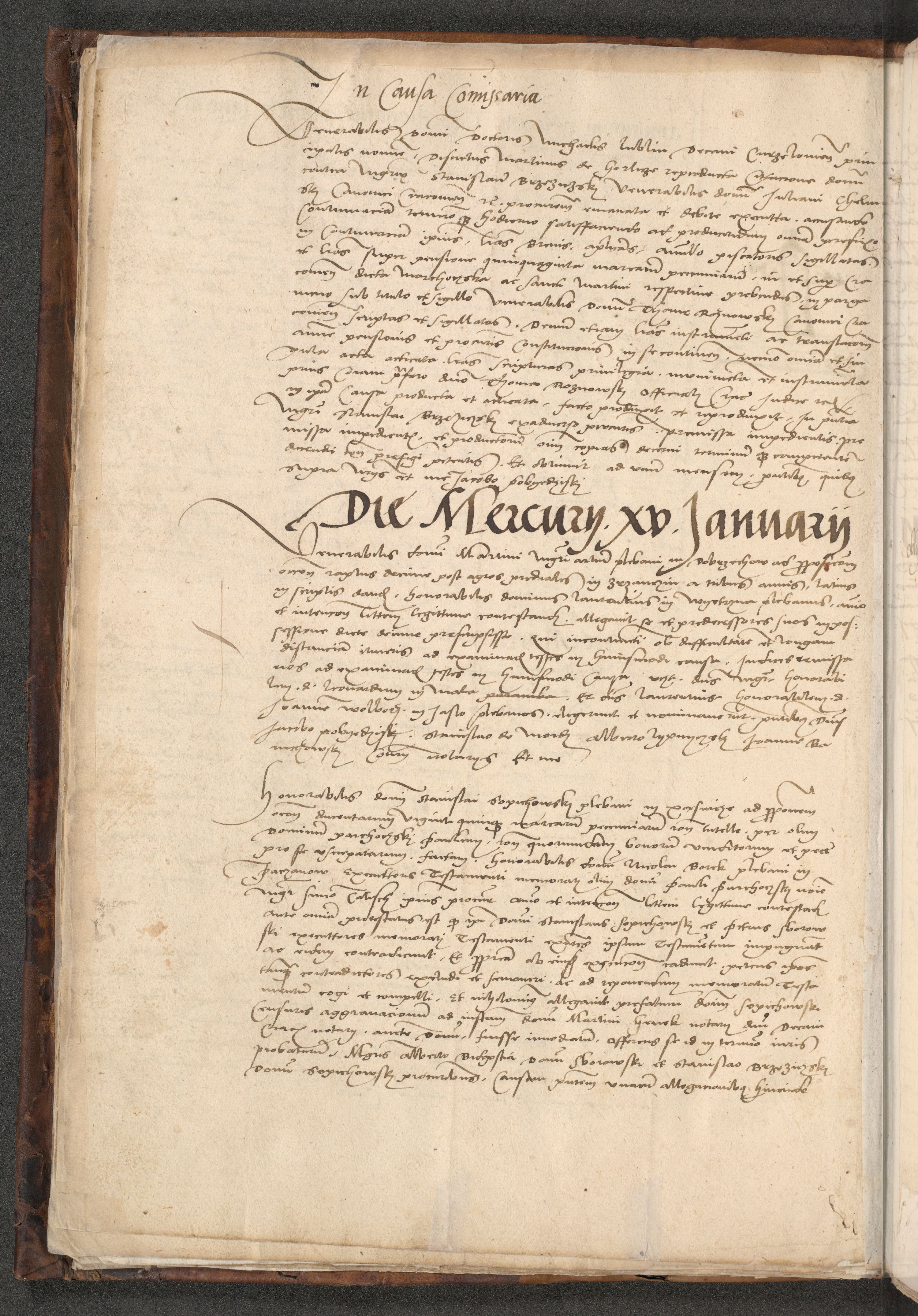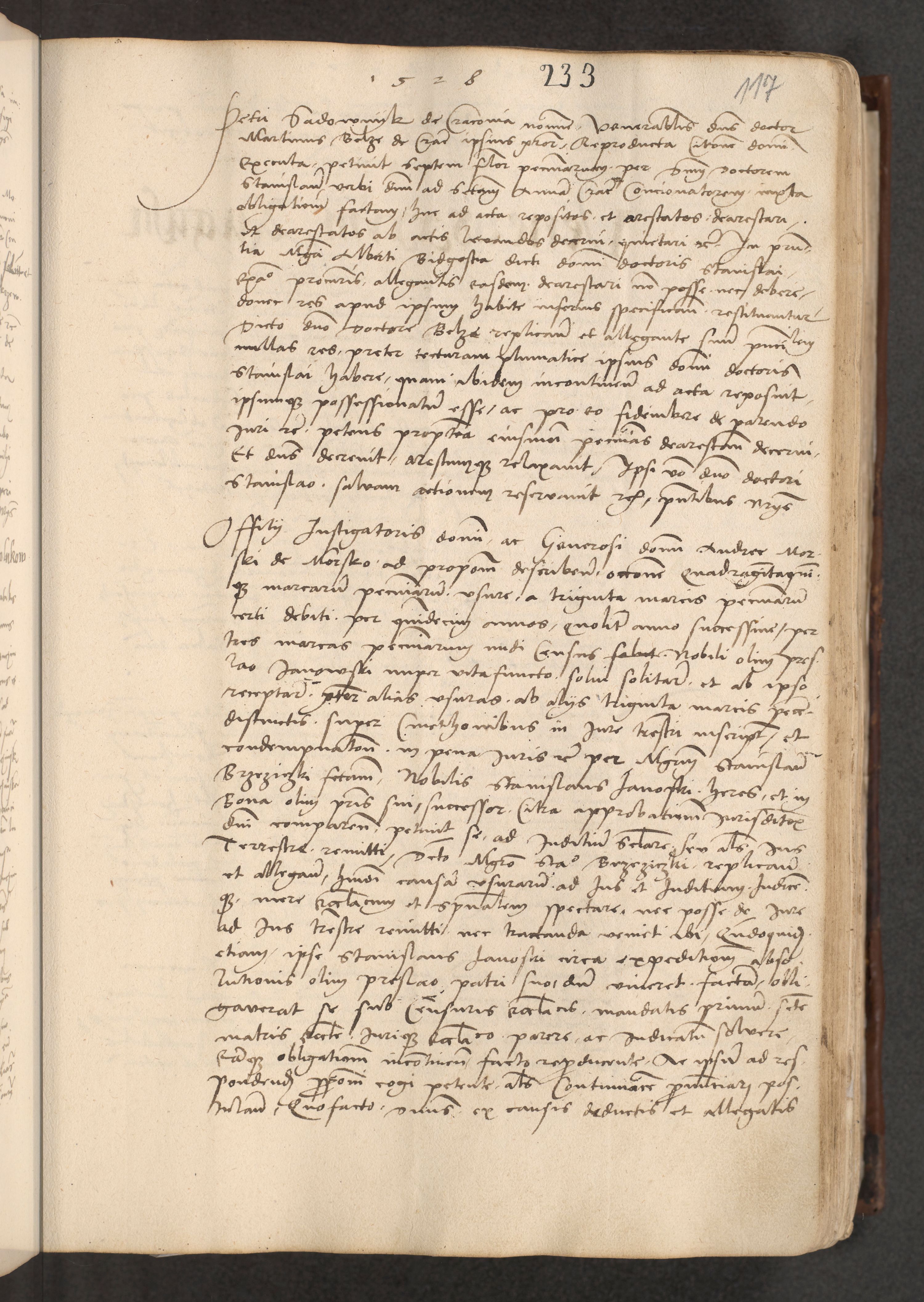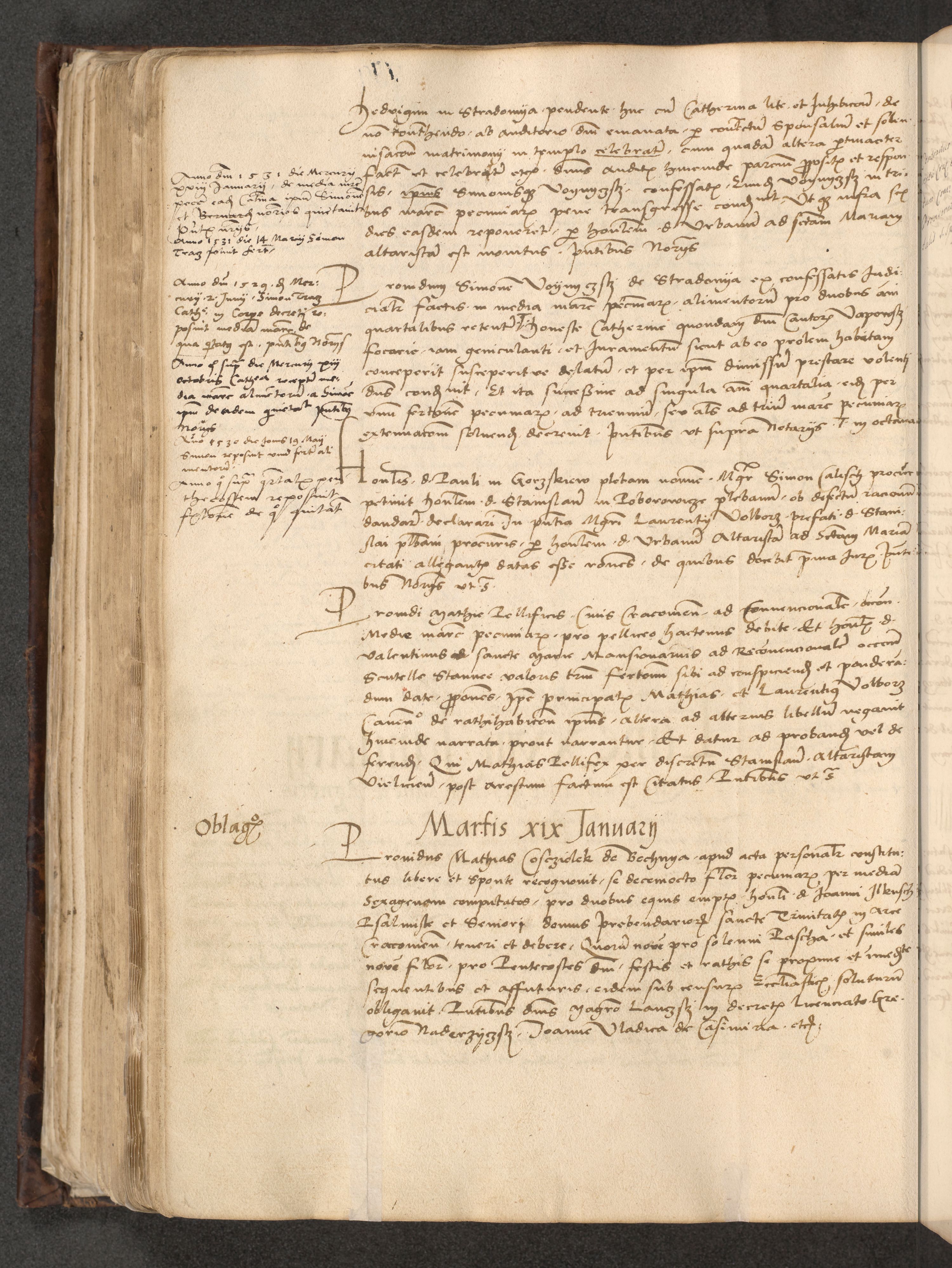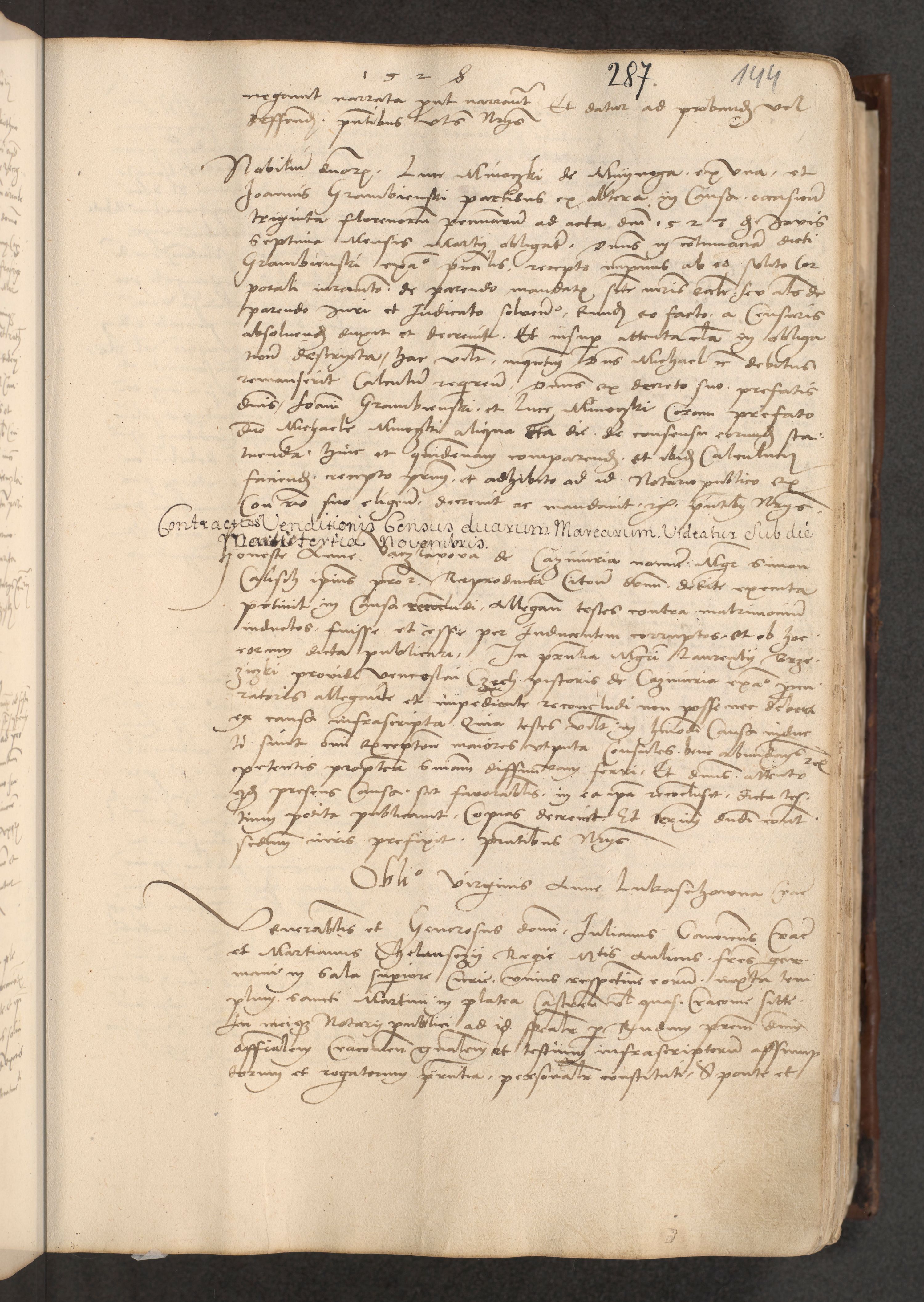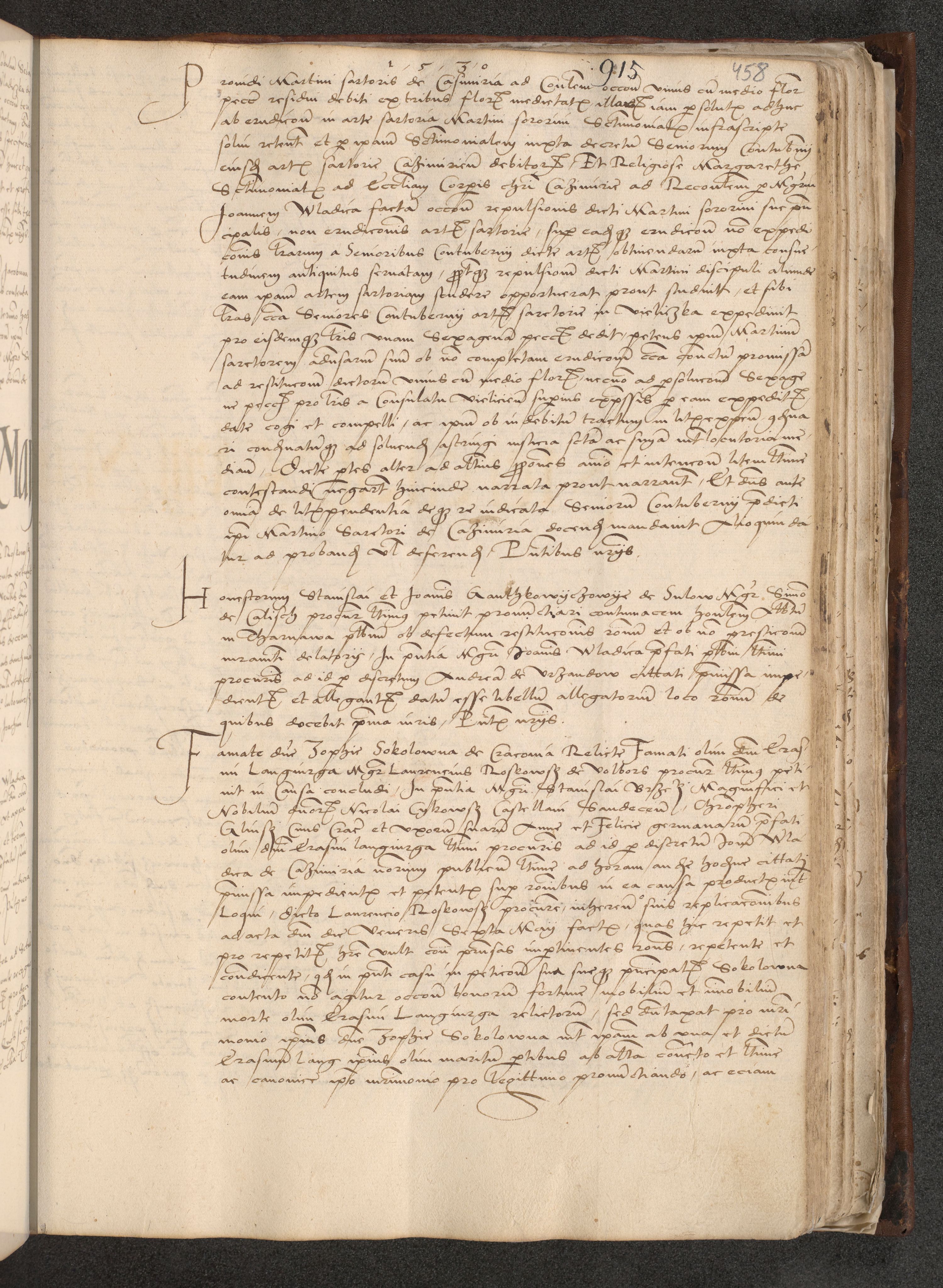INRI. Acta actorum, obligacionum et sentenciarum tam interlocutoriarum quam diffinitivarum coram reverendo patre ac egregio viro domino Jacobo Erciss[o]wski decretorum doctorem, canonico et officiali generali Cracoviensi ad annum Domini 1528, indicionem primam, pontificatus sanctissimi in Christo patris et domini domini Clementis divina probidendcia pape seprtimi, annum quintum, per Stanislaum de Mordi legalem consistorii notarium omine felici inchoantur