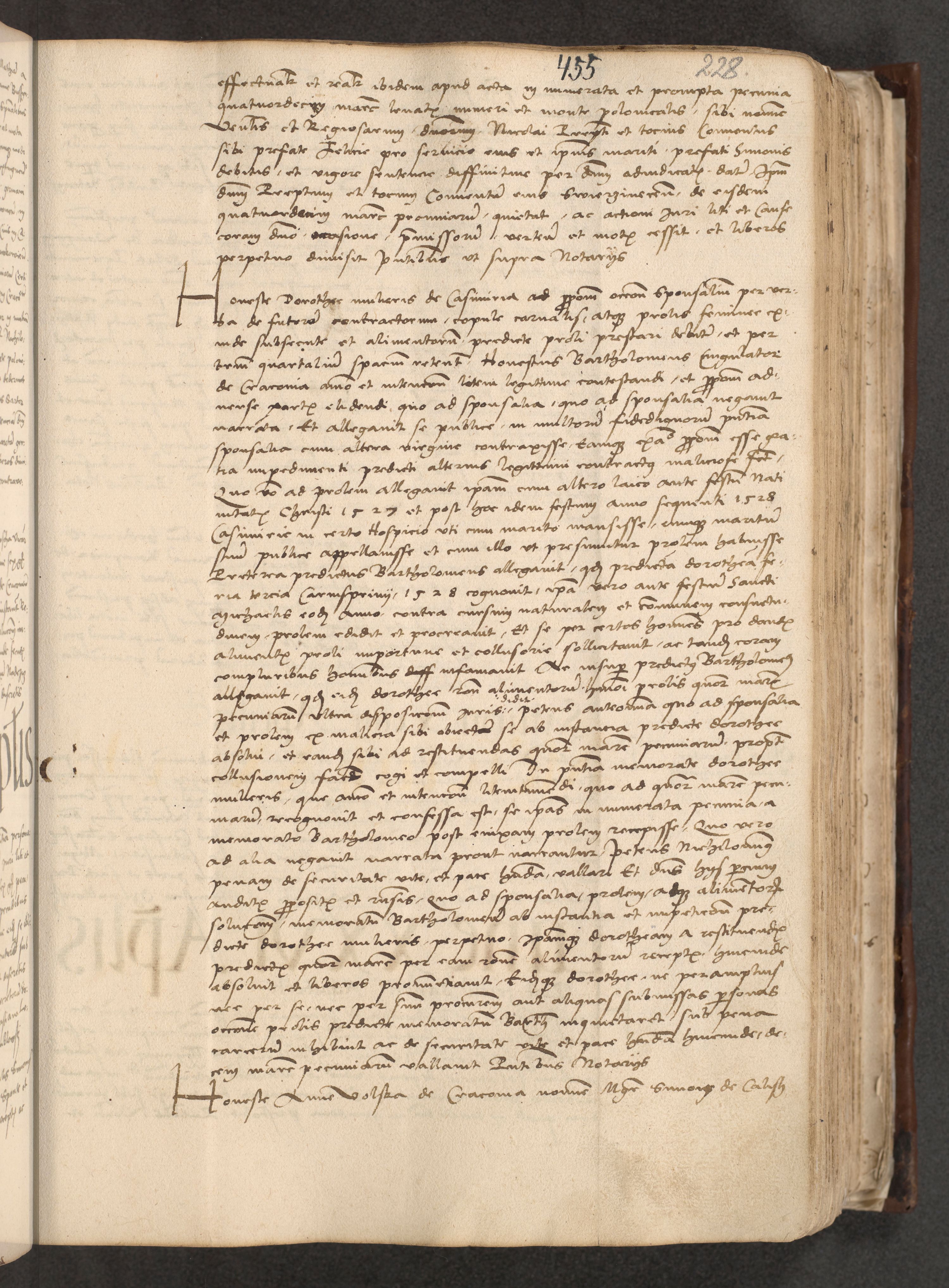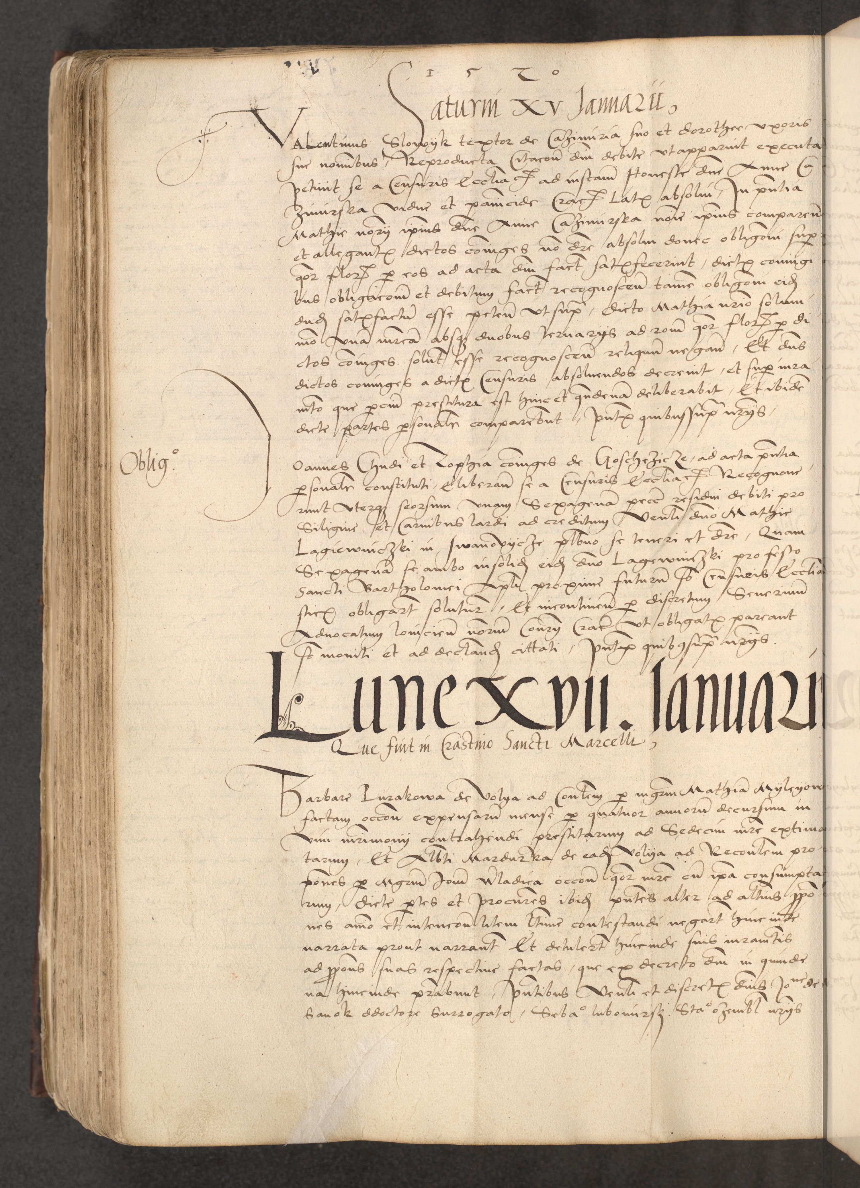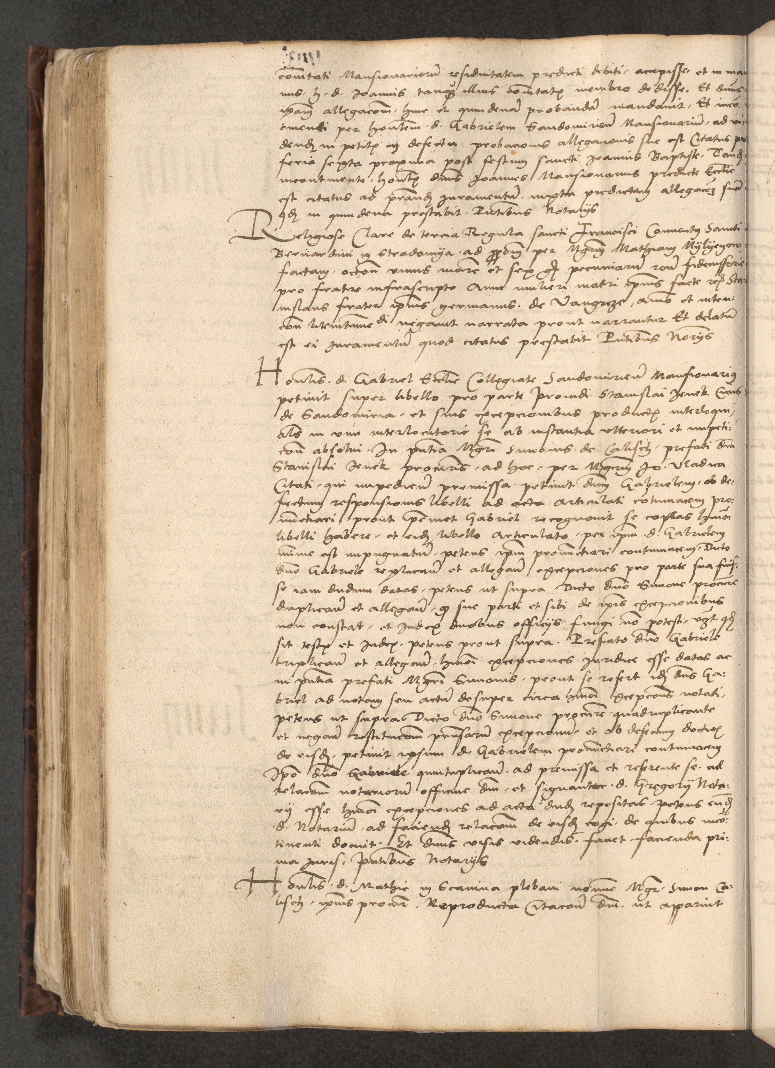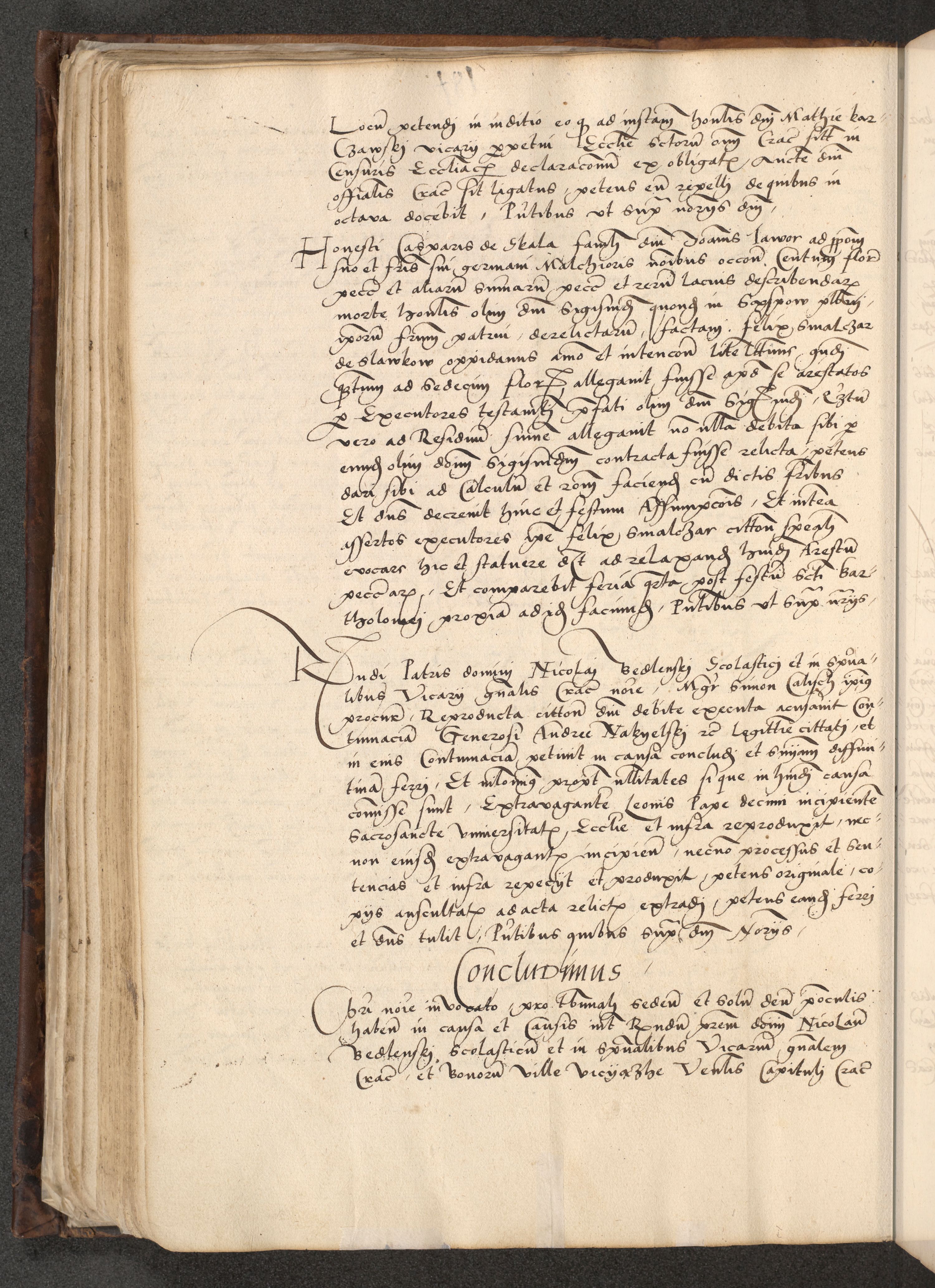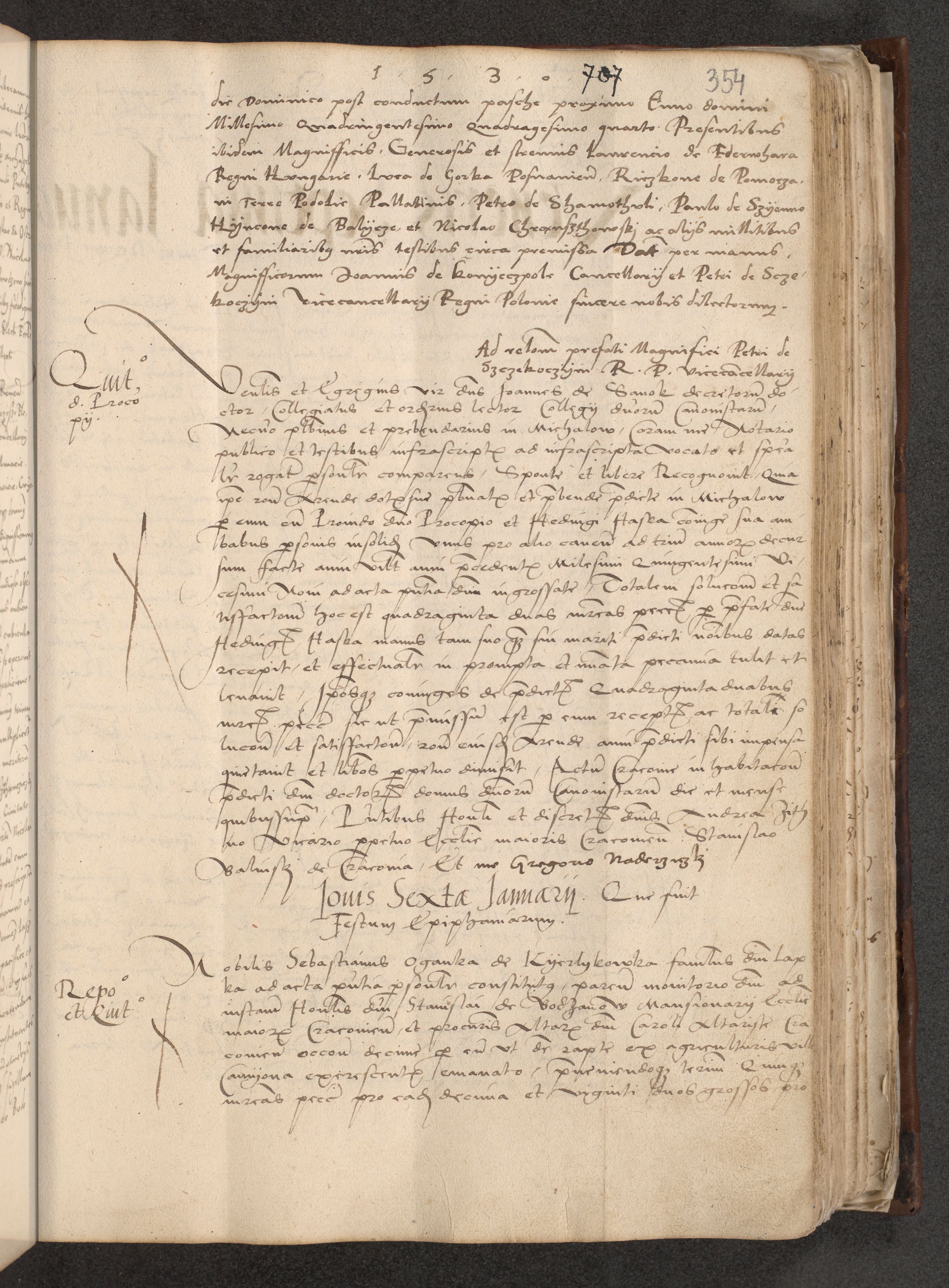 INRI. Acta actorum, obligacionum et sentenciarum tam interlocutoriarum quam diffinitivarum coram reverendo patre ac egregio viro domino Jacobo Erciss[o]wski decretorum doctorem, canonico et officiali generali Cracoviensi ad annum Domini 1528, indicionem primam, pontificatus sanctissimi in Christo patris et domini domini Clementis divina probidendcia pape seprtimi, annum quintum, per Stanislaum de Mordi legalem consistorii notarium omine felici inchoantur