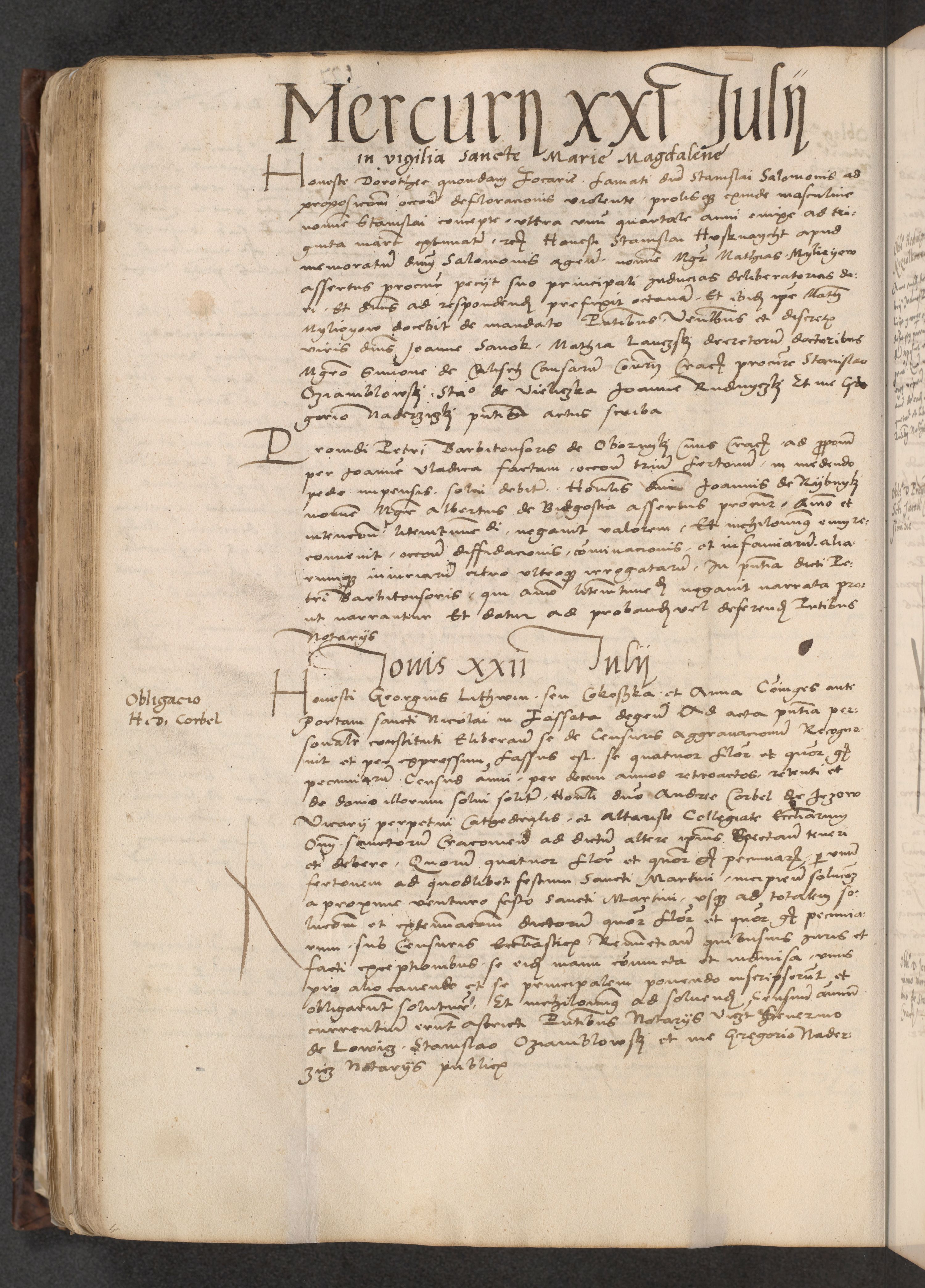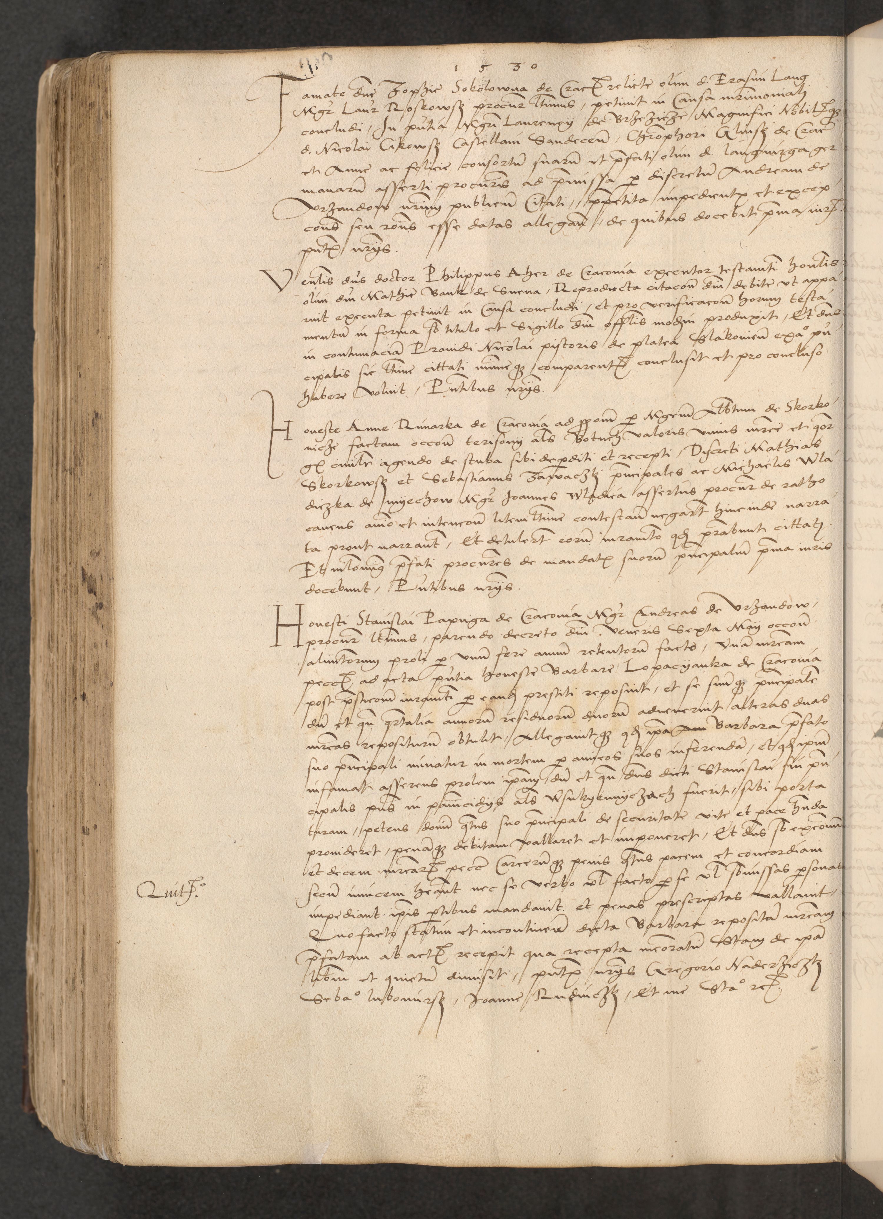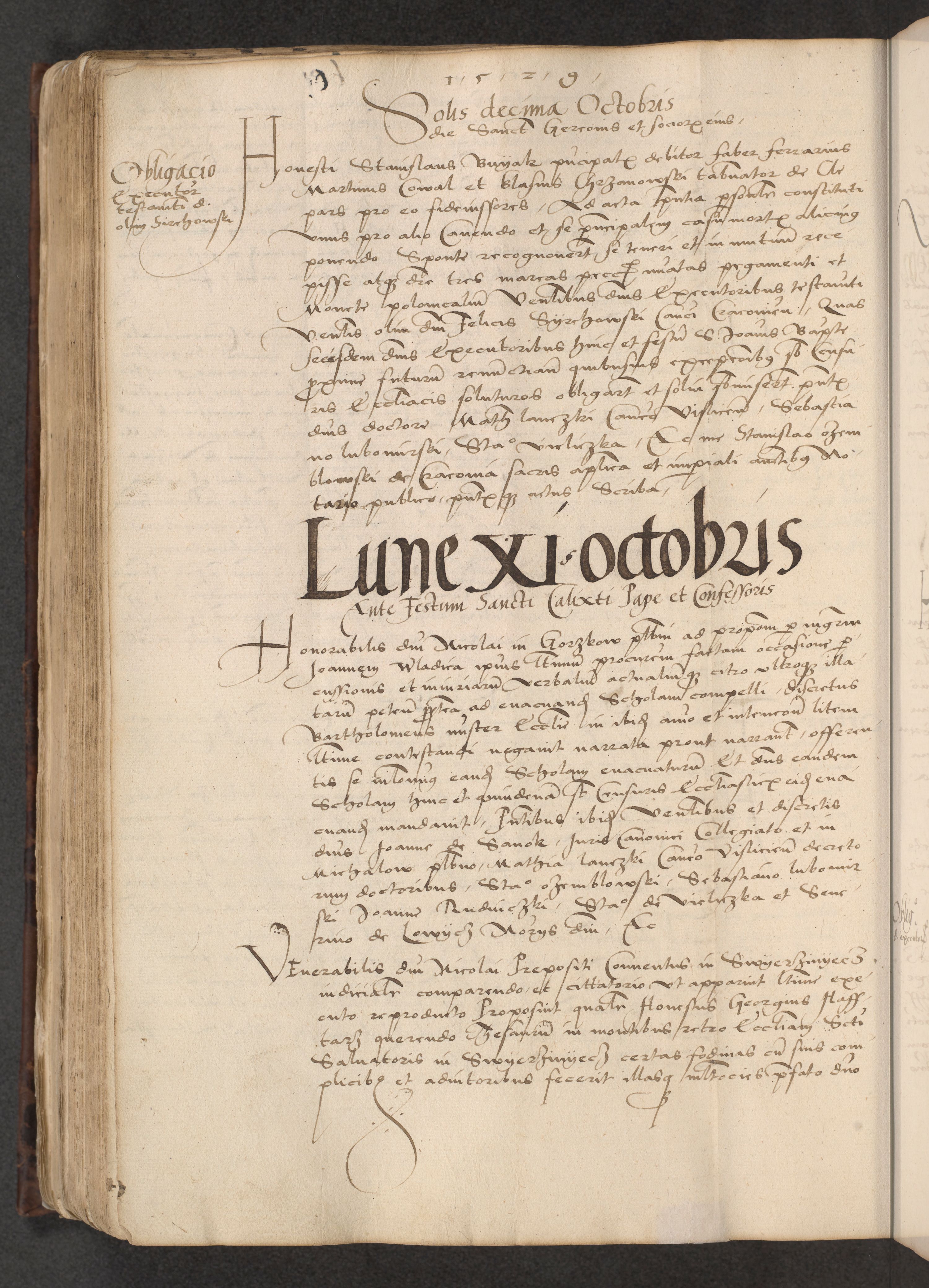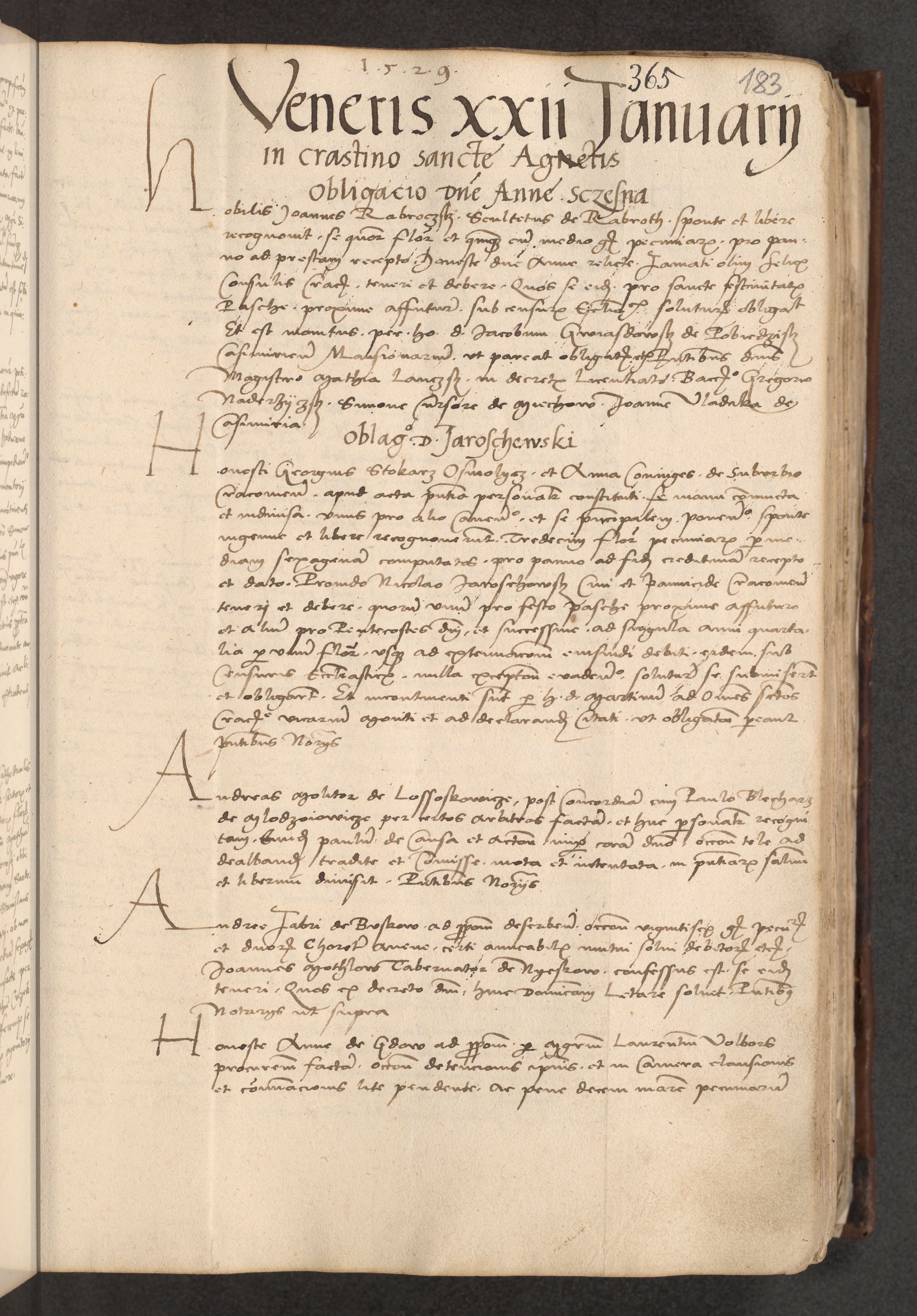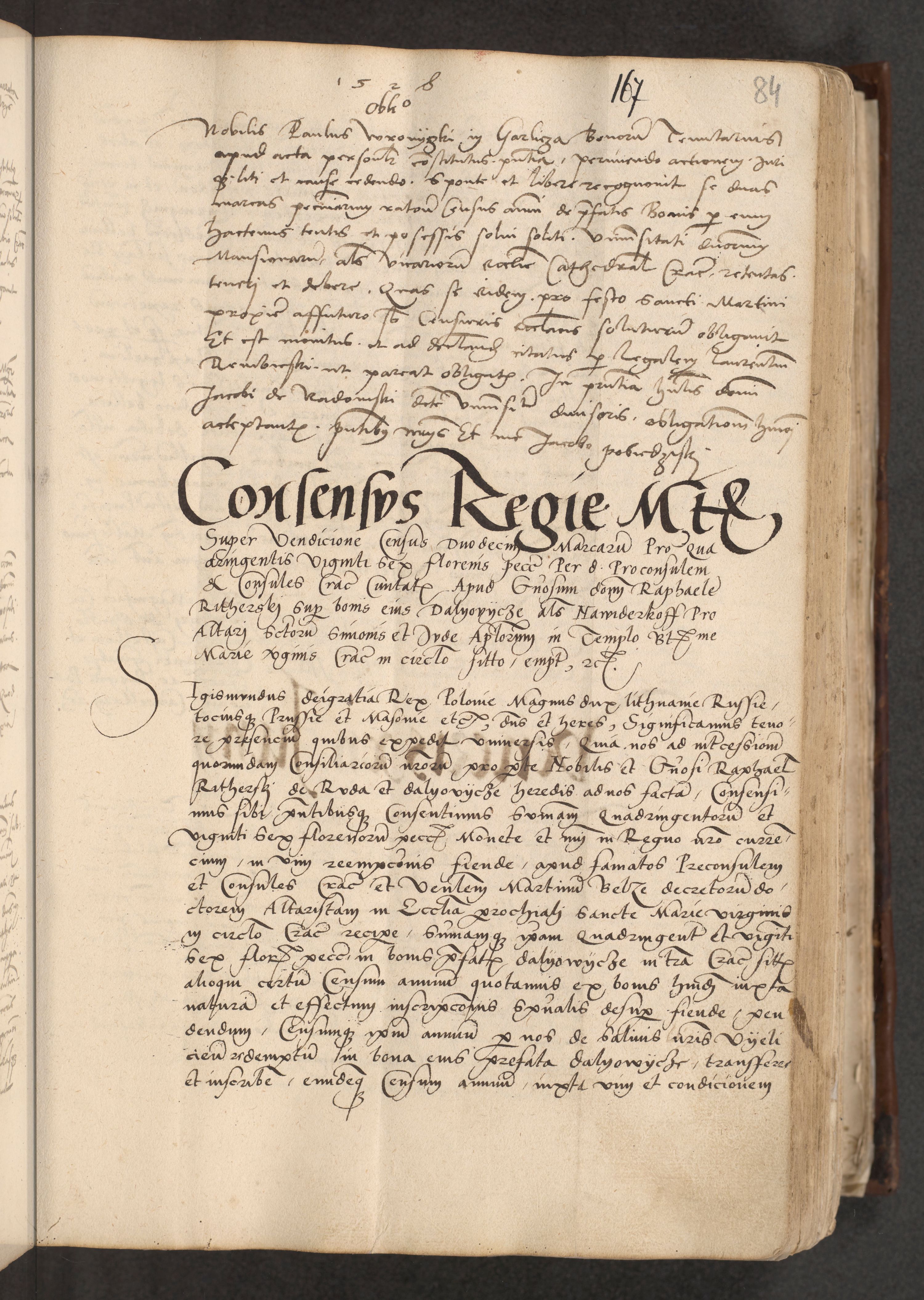INRI. Acta actorum, obligacionum et sentenciarum tam interlocutoriarum quam diffinitivarum coram reverendo patre ac egregio viro domino Jacobo Erciss[o]wski decretorum doctorem, canonico et officiali generali Cracoviensi ad annum Domini 1528, indicionem primam, pontificatus sanctissimi in Christo patris et domini domini Clementis divina probidendcia pape seprtimi, annum quintum, per Stanislaum de Mordi legalem consistorii notarium omine felici inchoantur