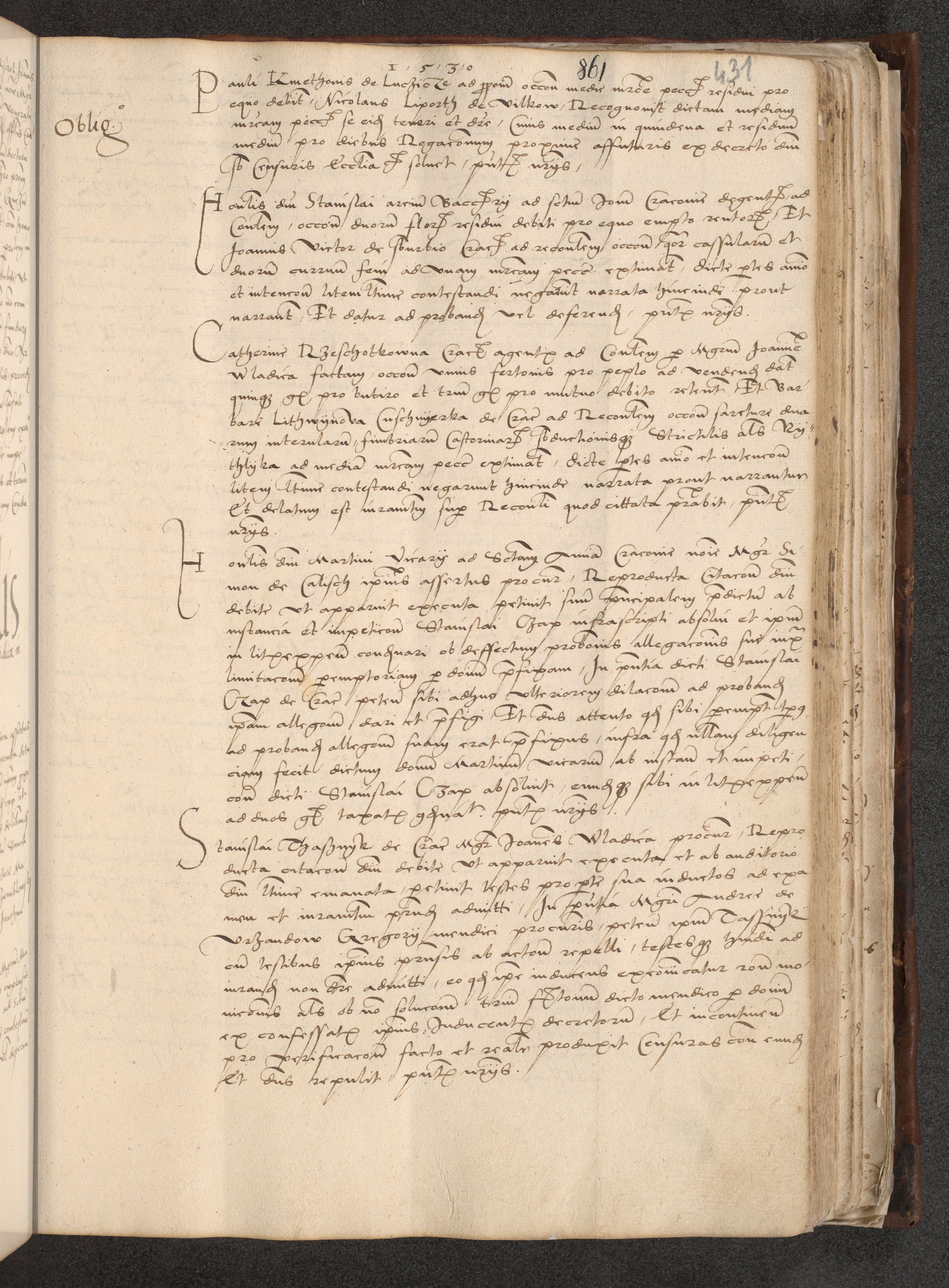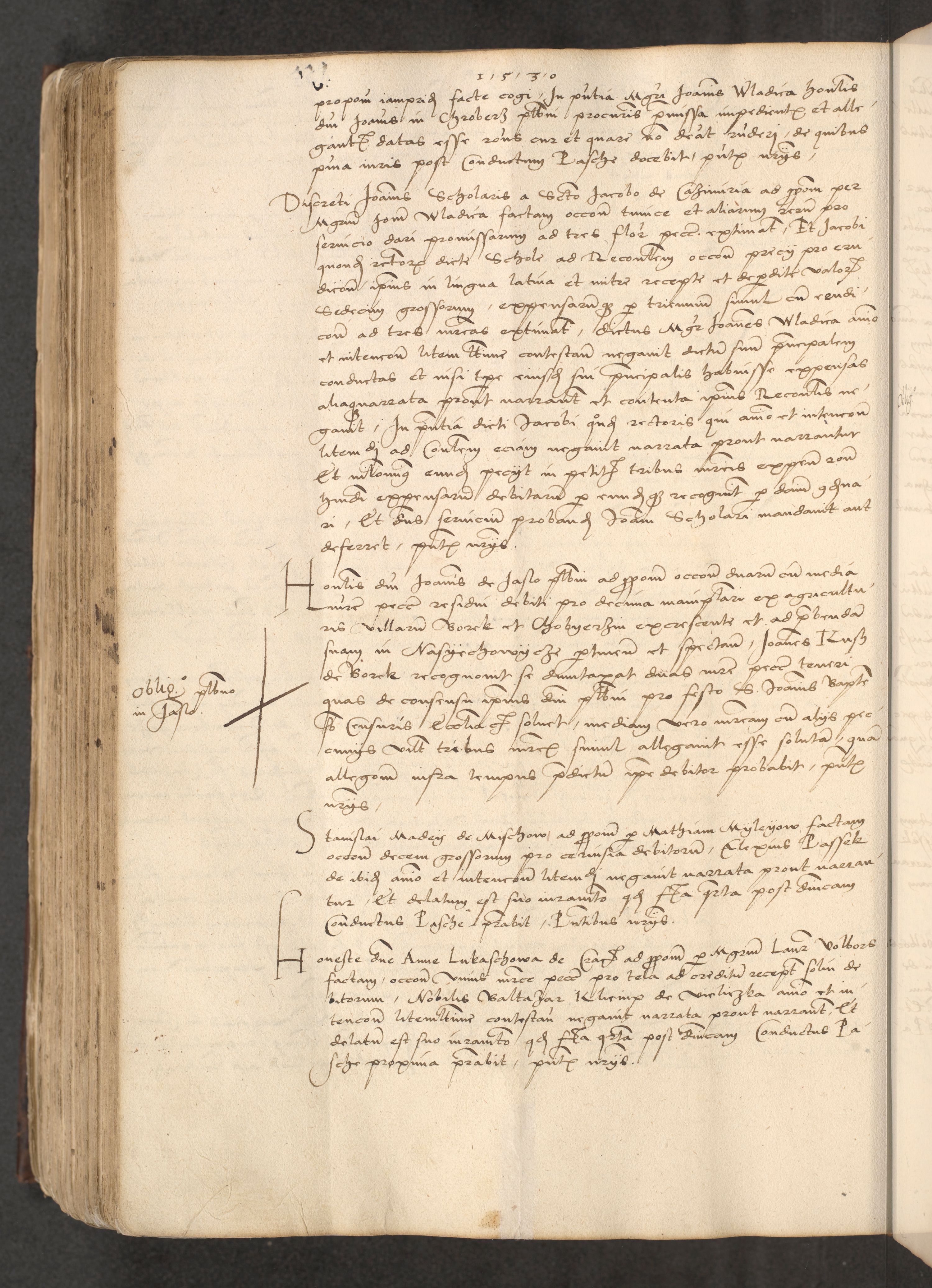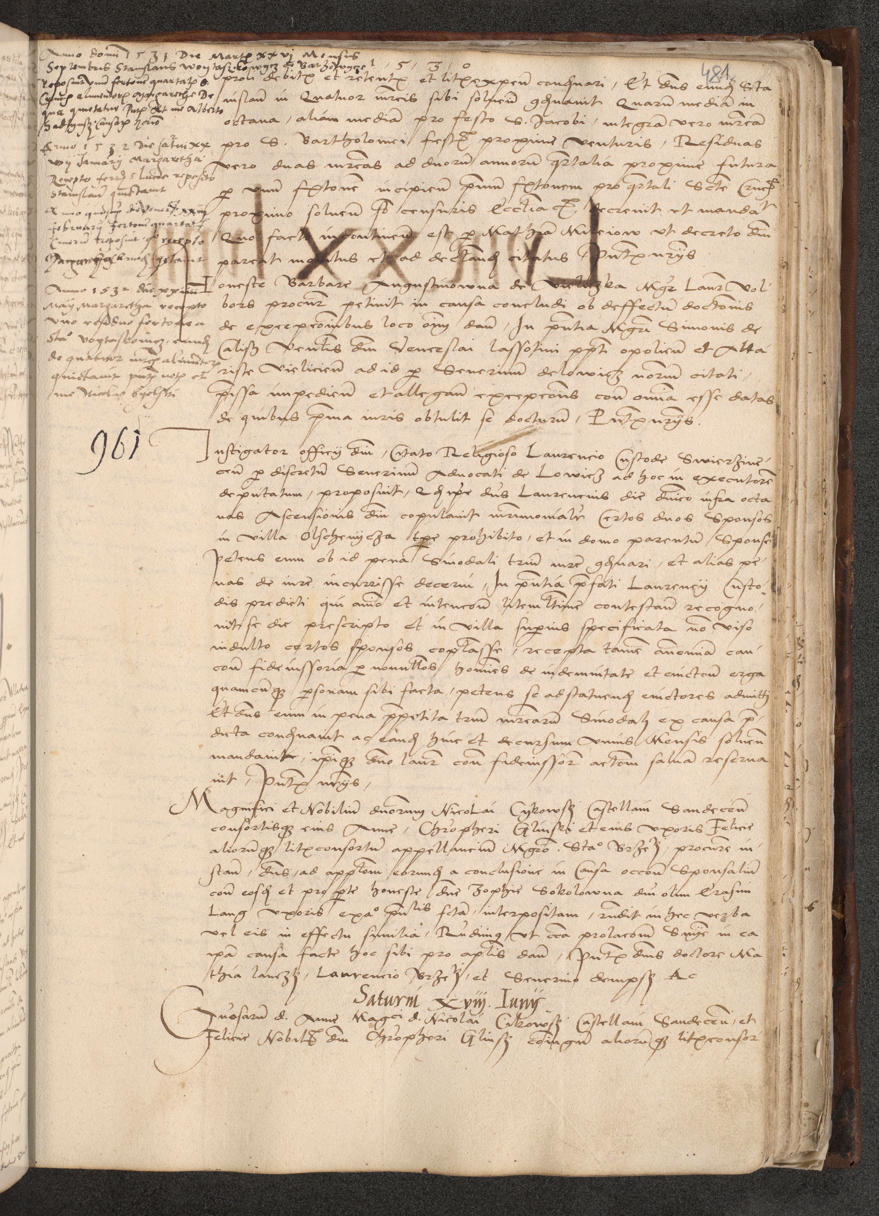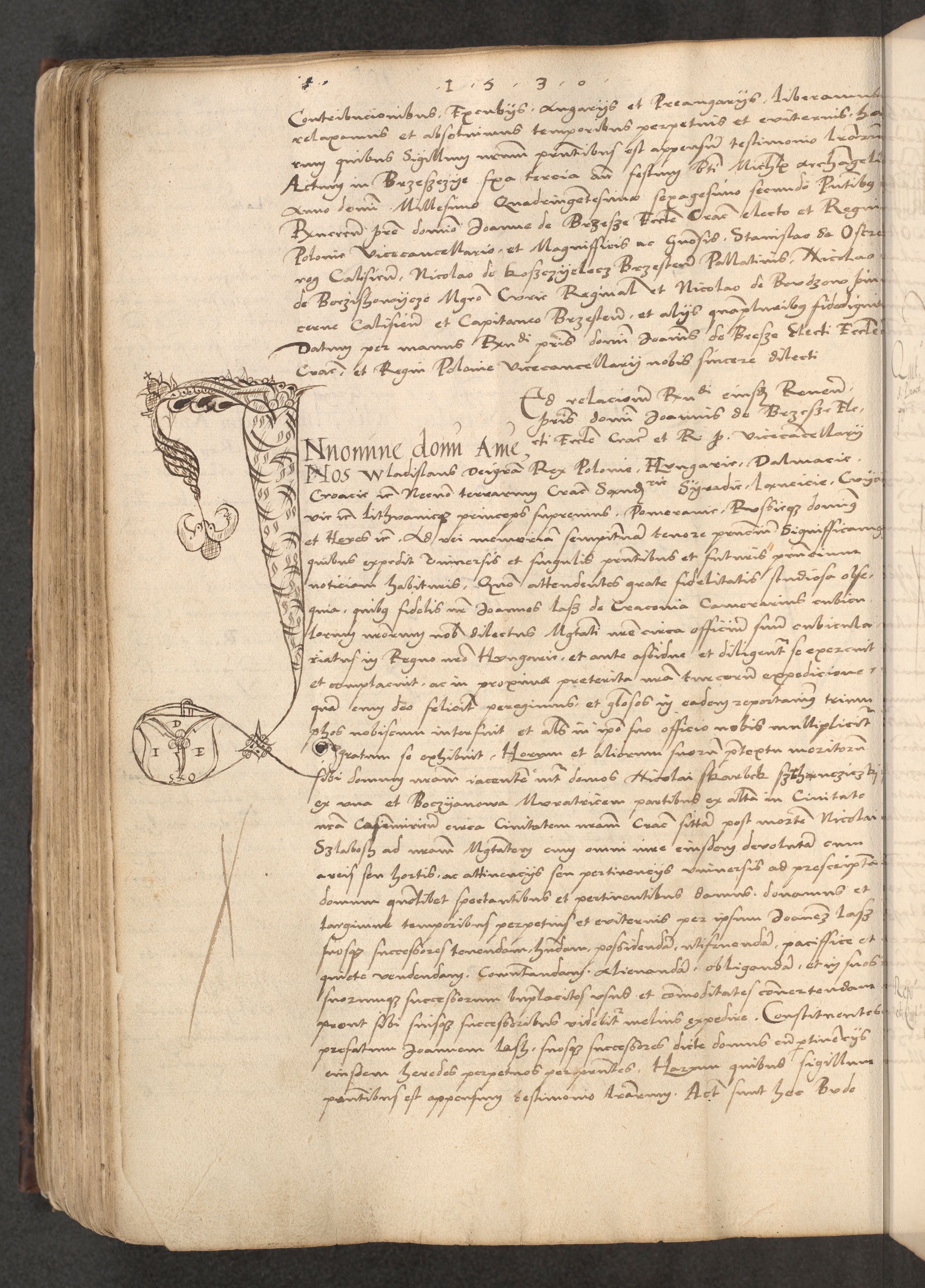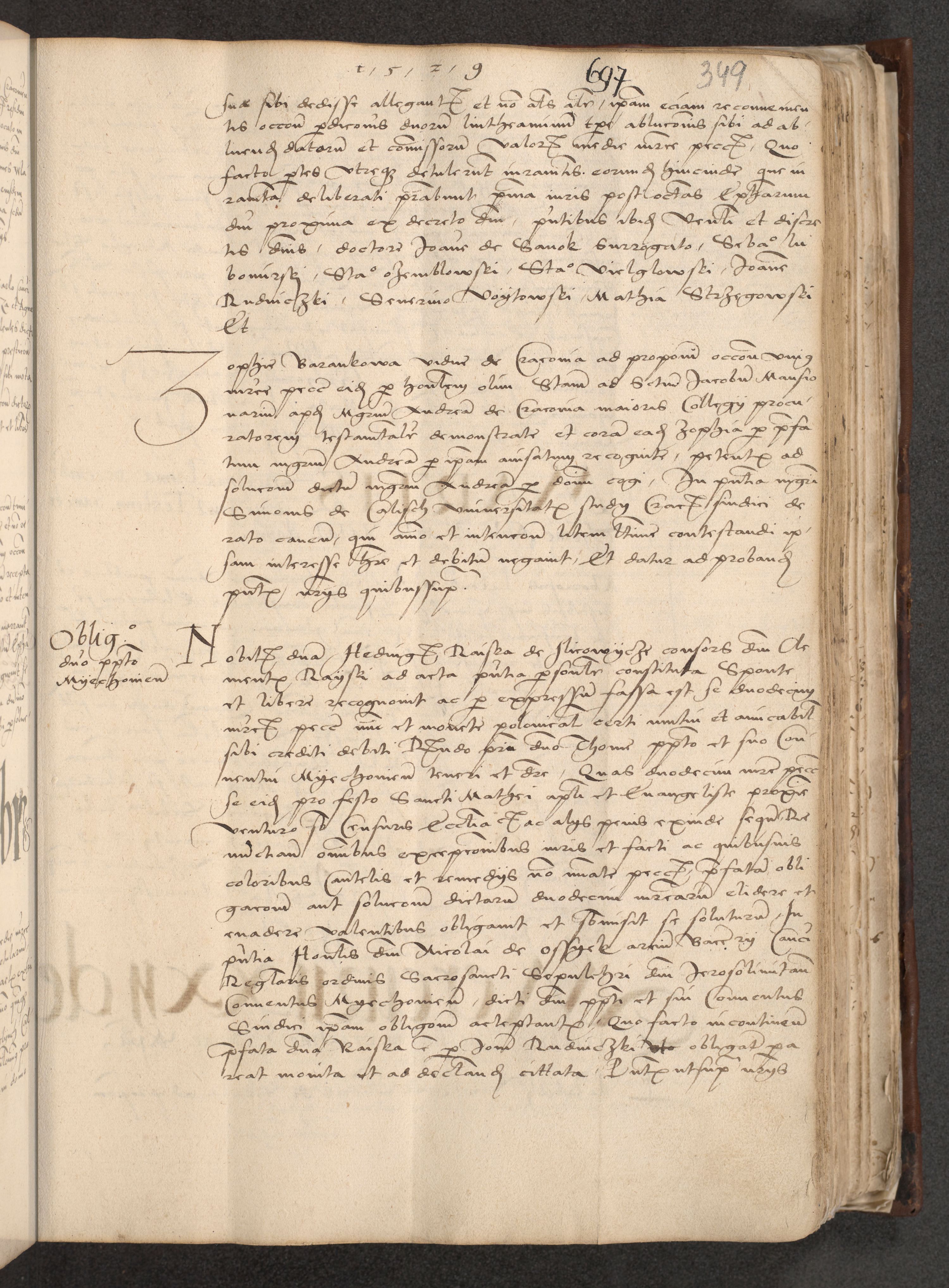INRI. Acta actorum, obligacionum et sentenciarum tam interlocutoriarum quam diffinitivarum coram reverendo patre ac egregio viro domino Jacobo Erciss[o]wski decretorum doctorem, canonico et officiali generali Cracoviensi ad annum Domini 1528, indicionem primam, pontificatus sanctissimi in Christo patris et domini domini Clementis divina probidendcia pape seprtimi, annum quintum, per Stanislaum de Mordi legalem consistorii notarium omine felici inchoantur