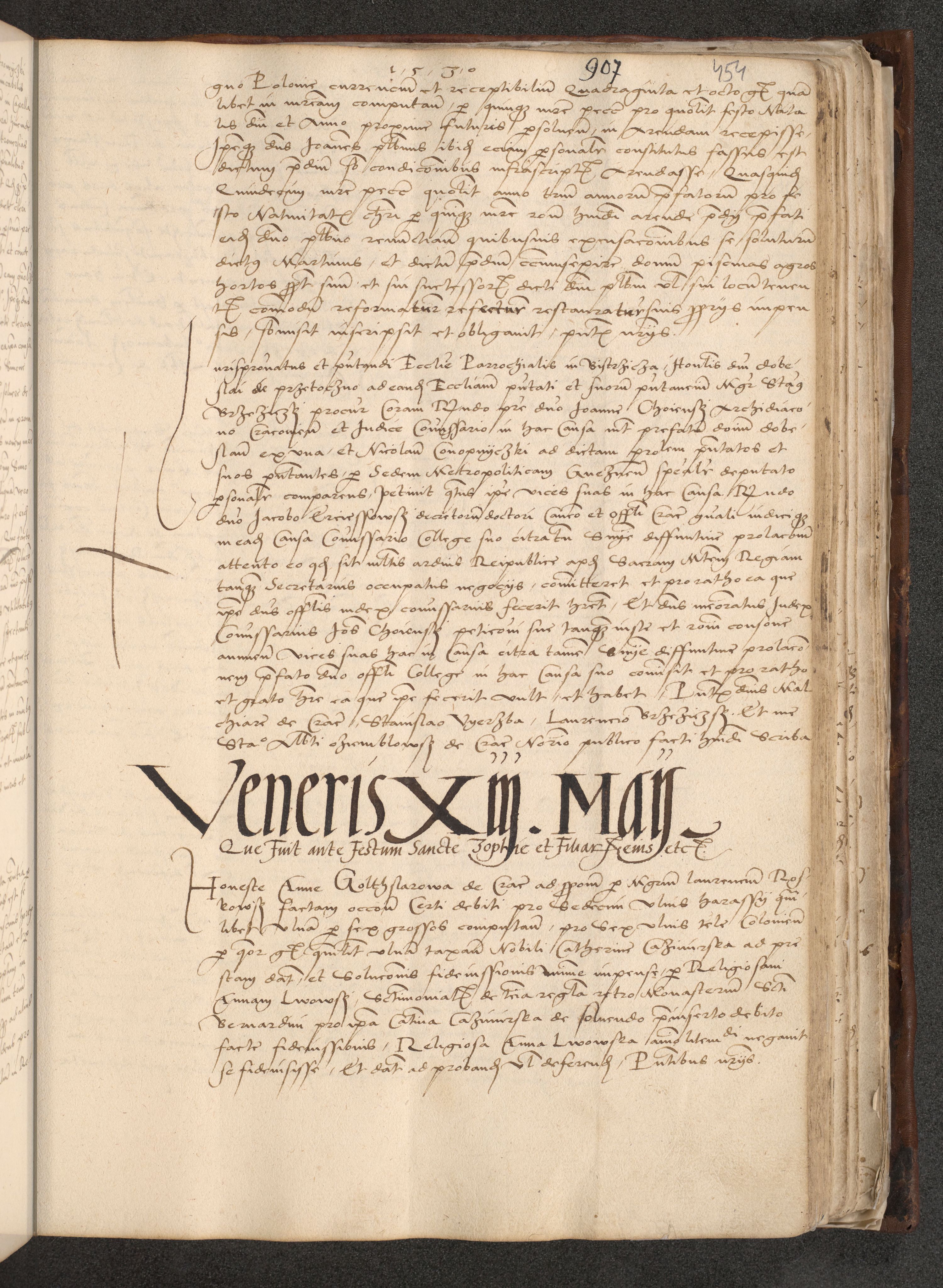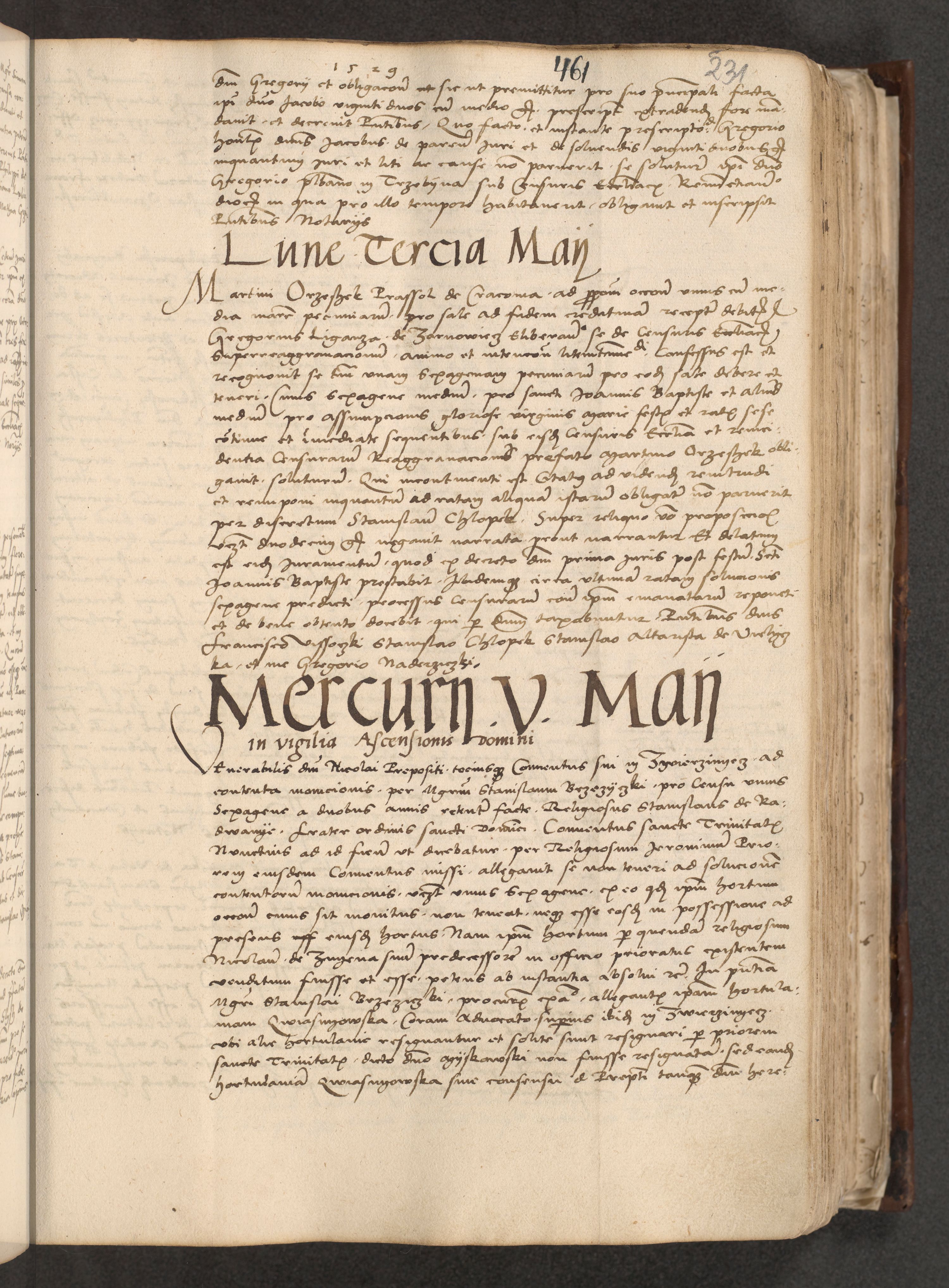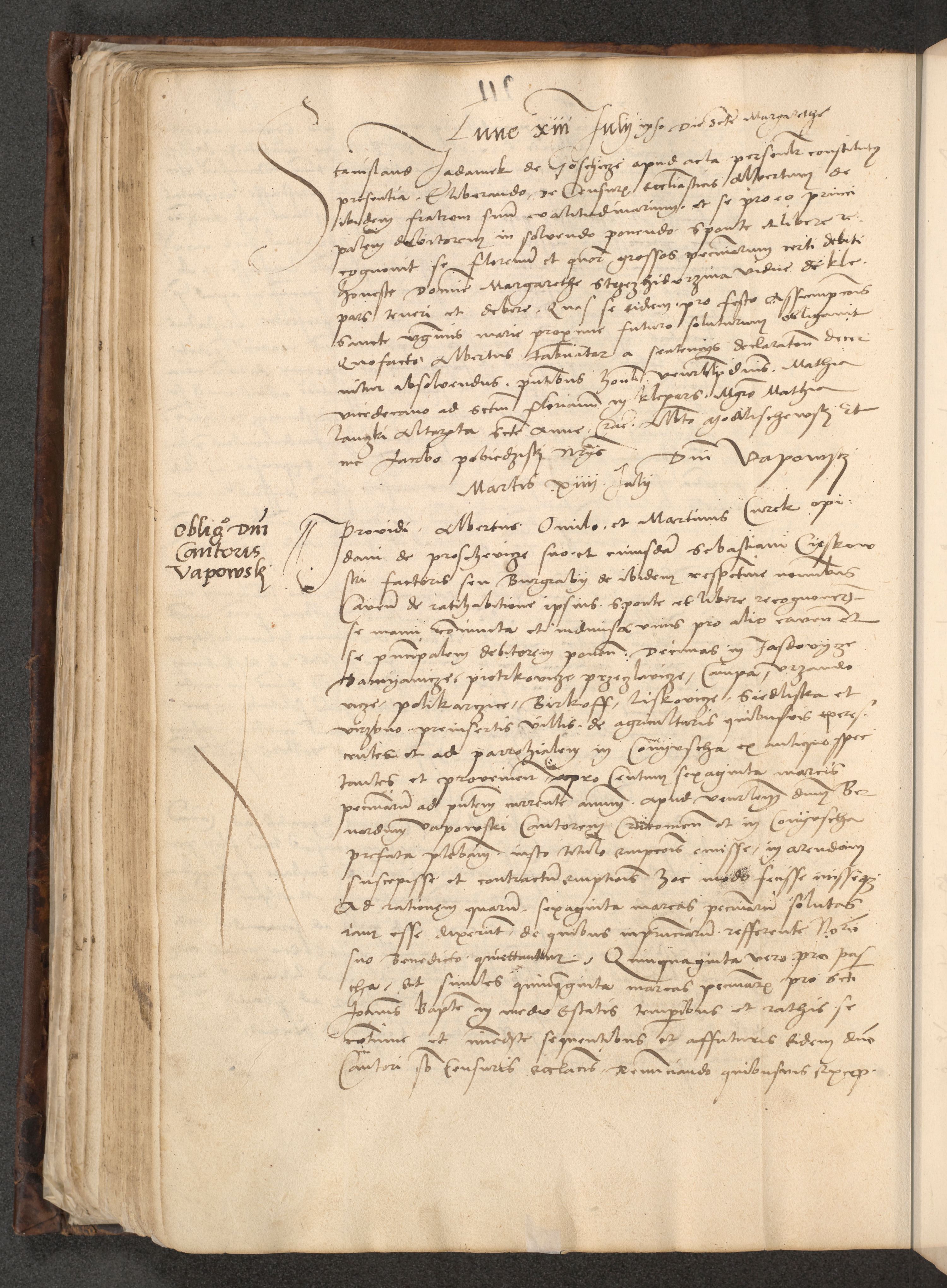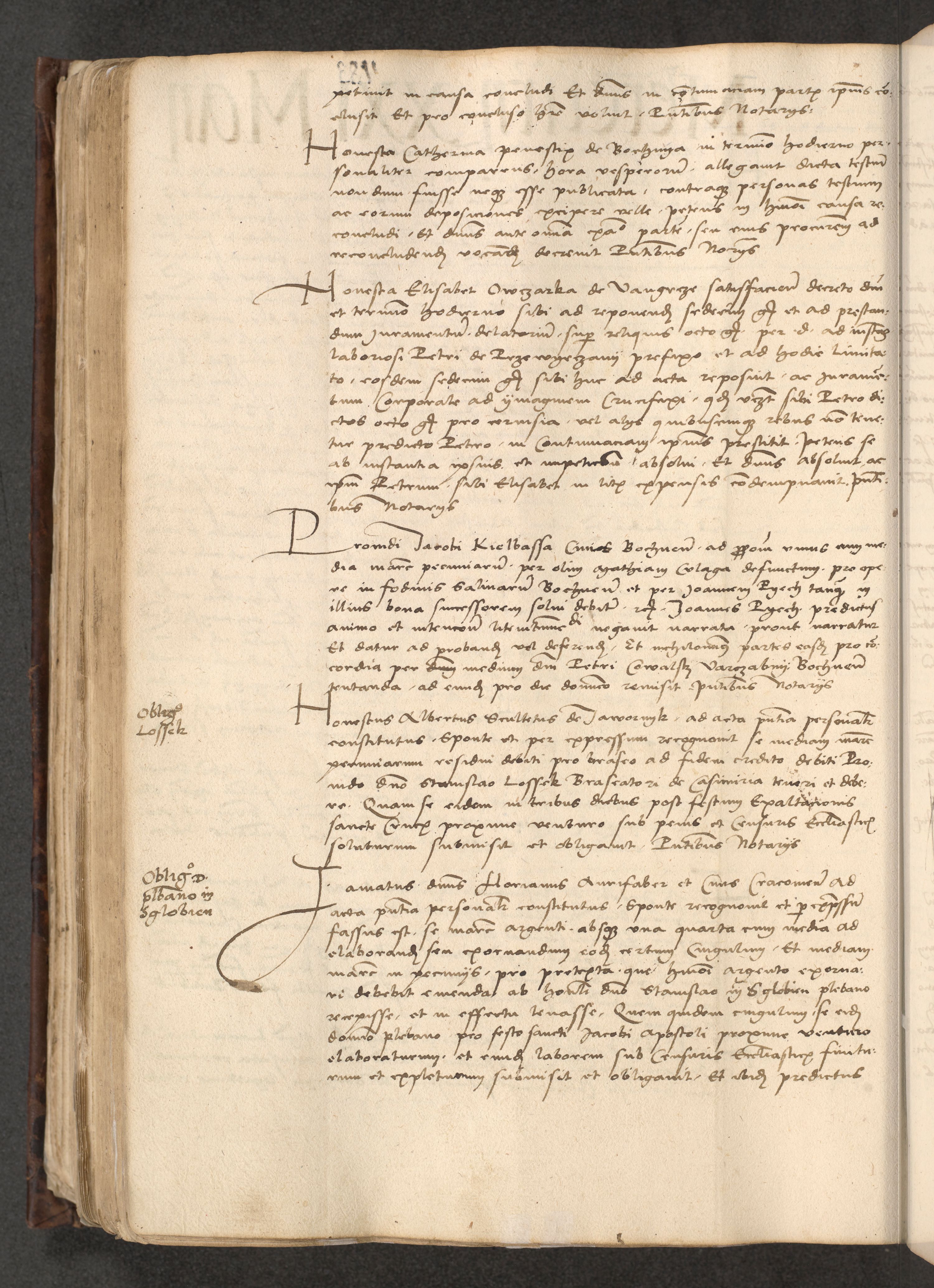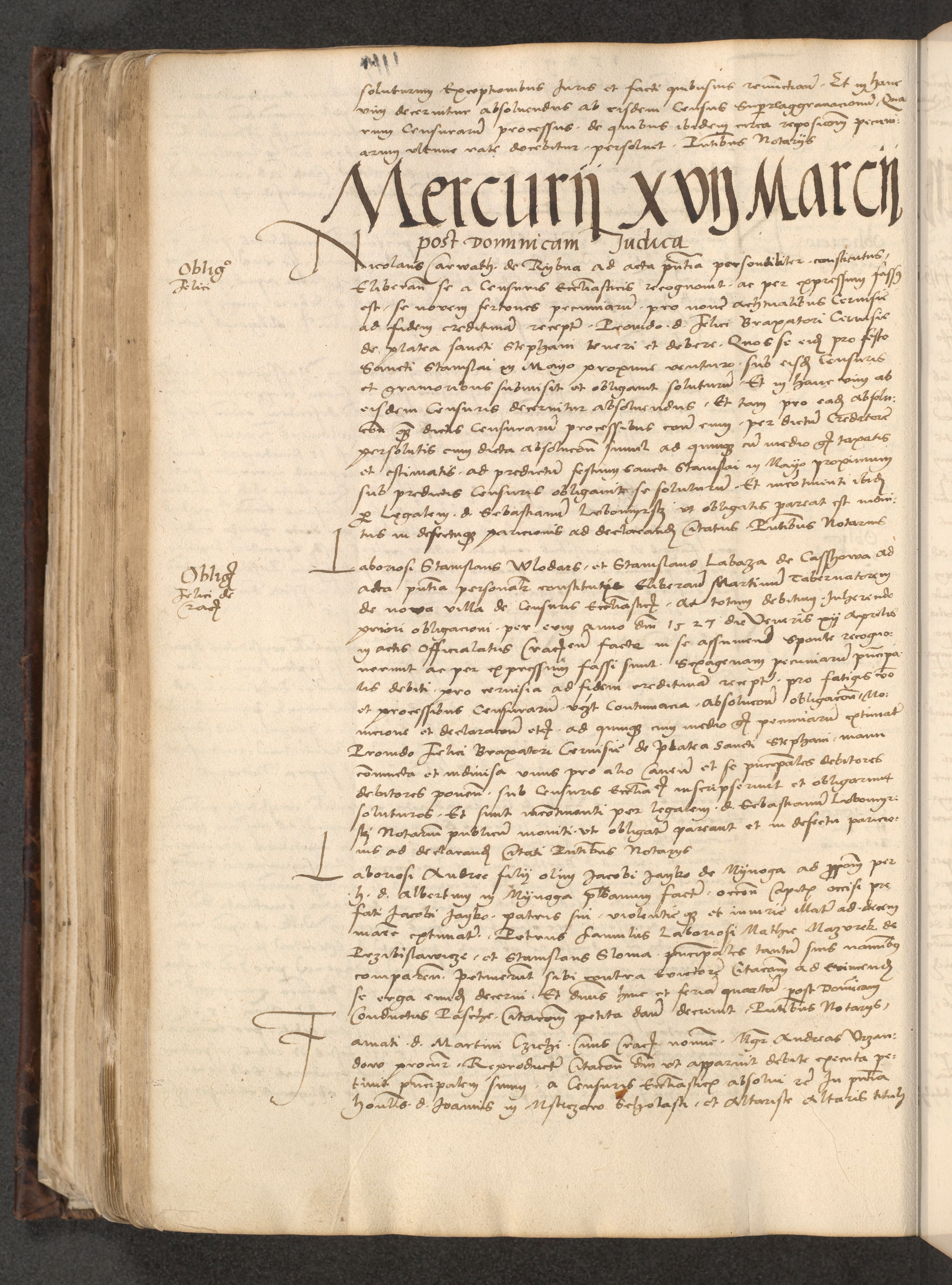 INRI. Acta actorum, obligacionum et sentenciarum tam interlocutoriarum quam diffinitivarum coram reverendo patre ac egregio viro domino Jacobo Erciss[o]wski decretorum doctorem, canonico et officiali generali Cracoviensi ad annum Domini 1528, indicionem primam, pontificatus sanctissimi in Christo patris et domini domini Clementis divina probidendcia pape seprtimi, annum quintum, per Stanislaum de Mordi legalem consistorii notarium omine felici inchoantur