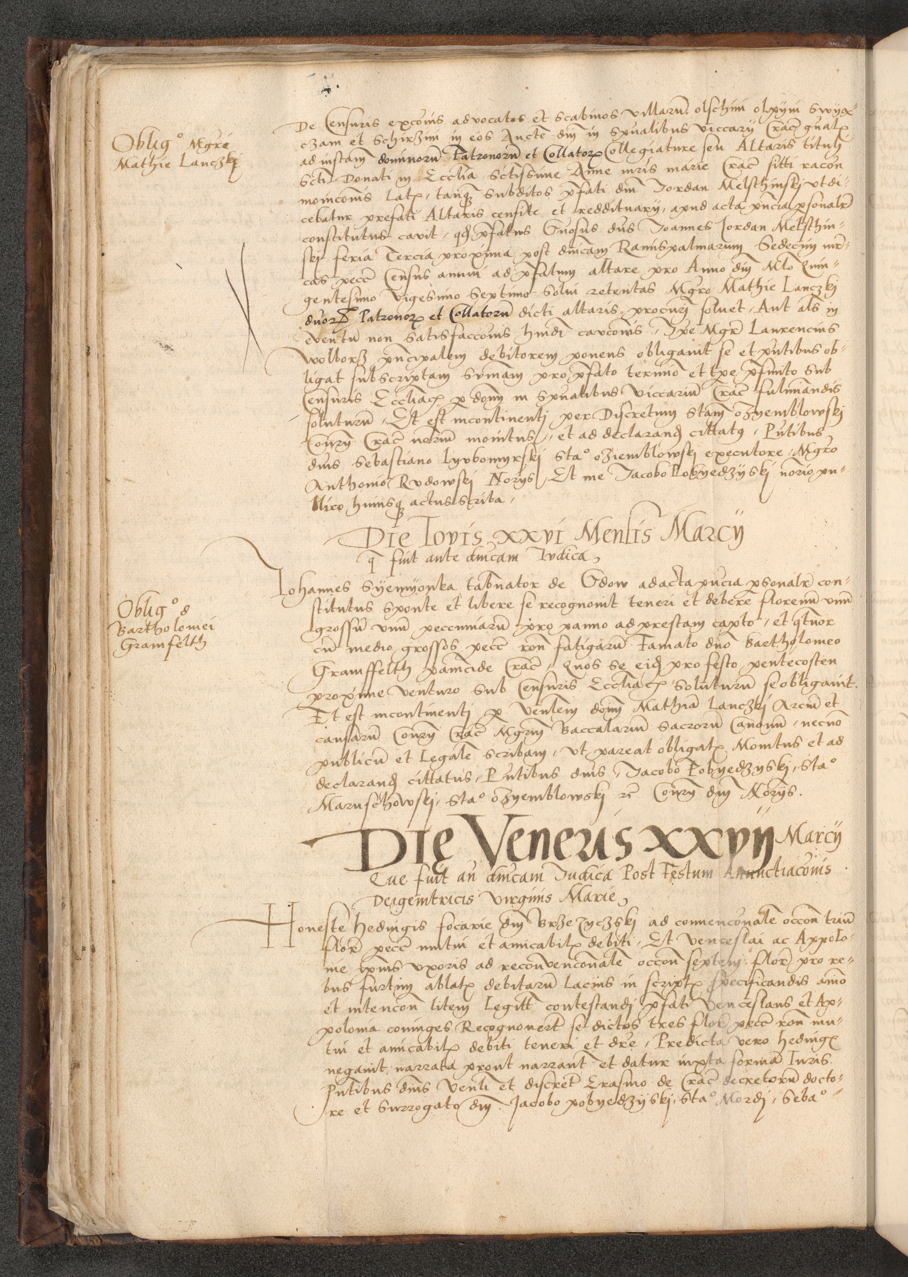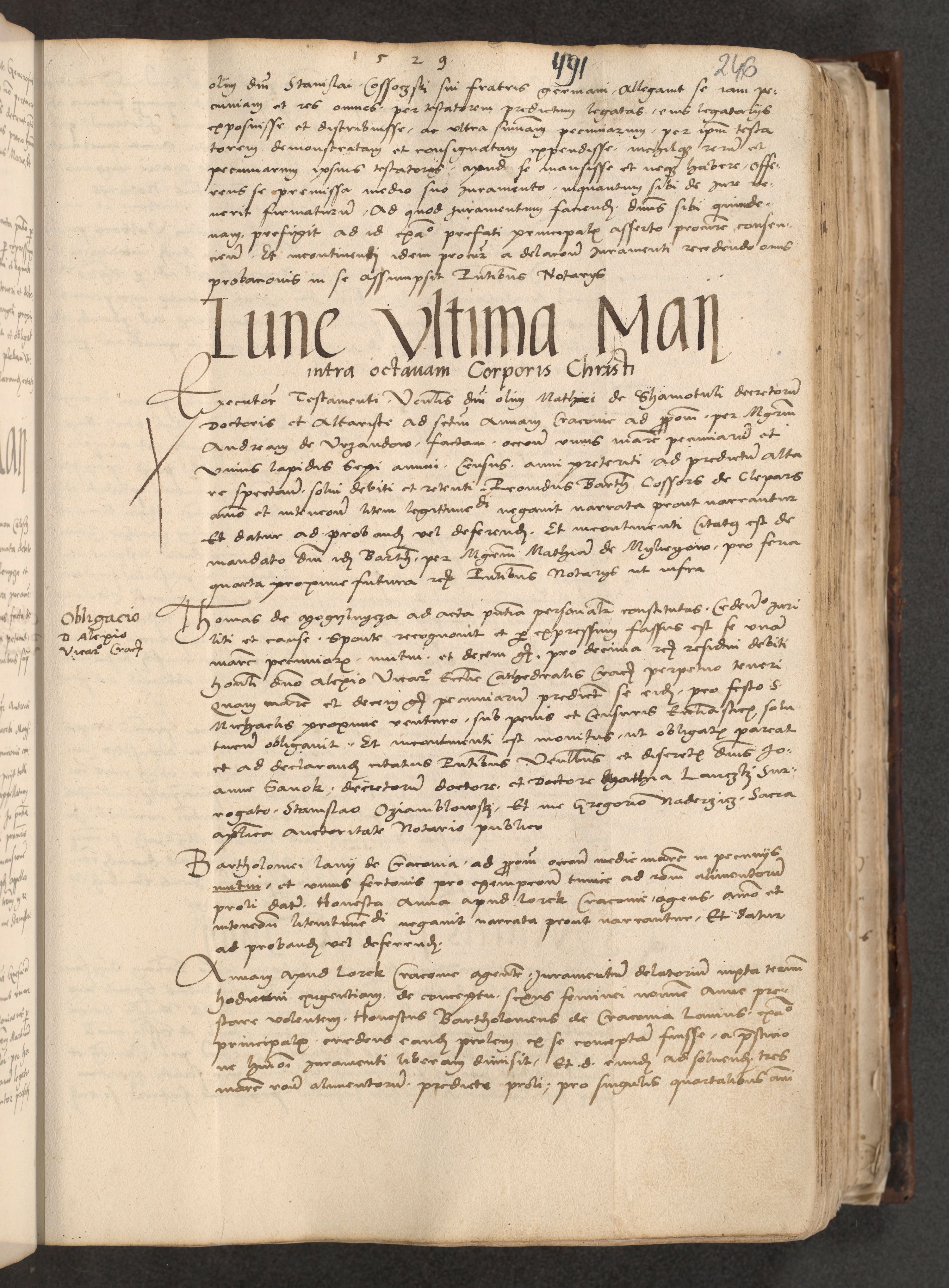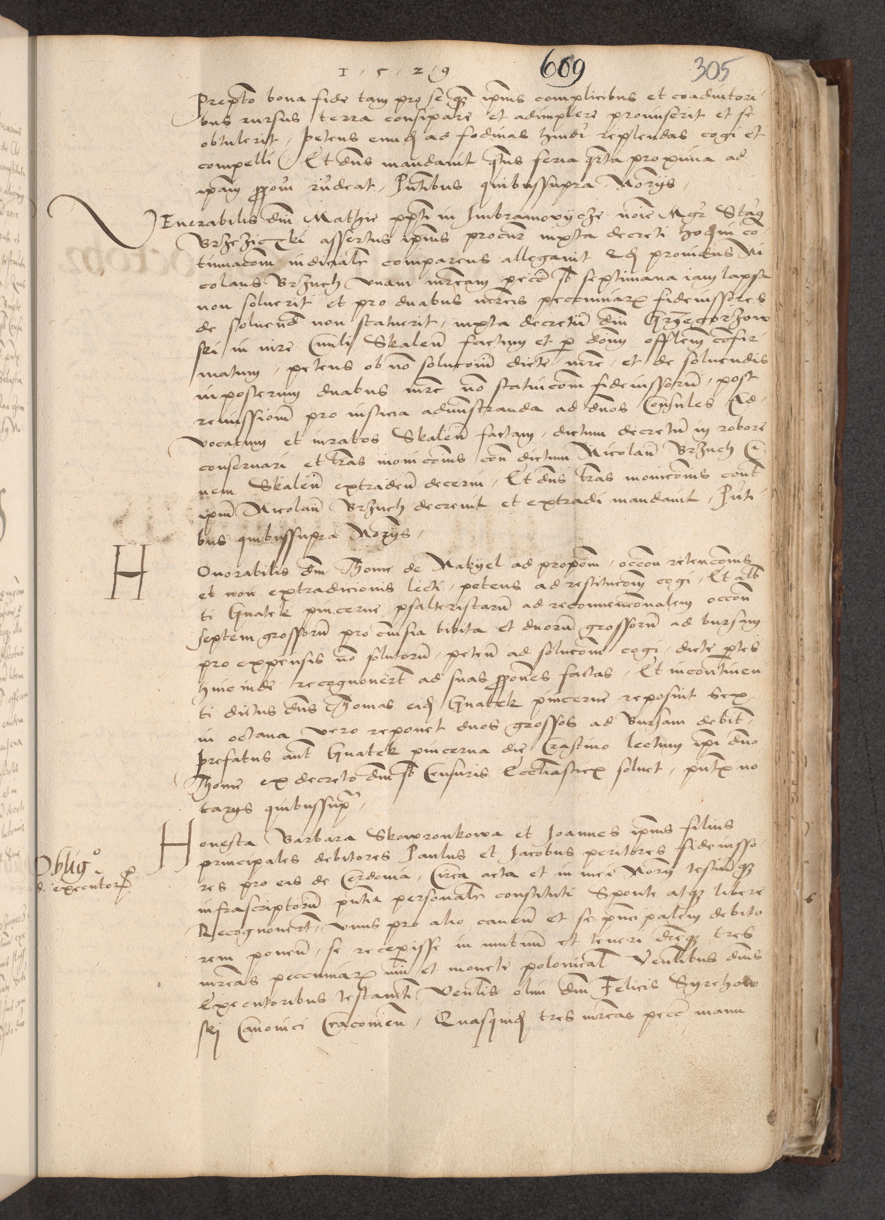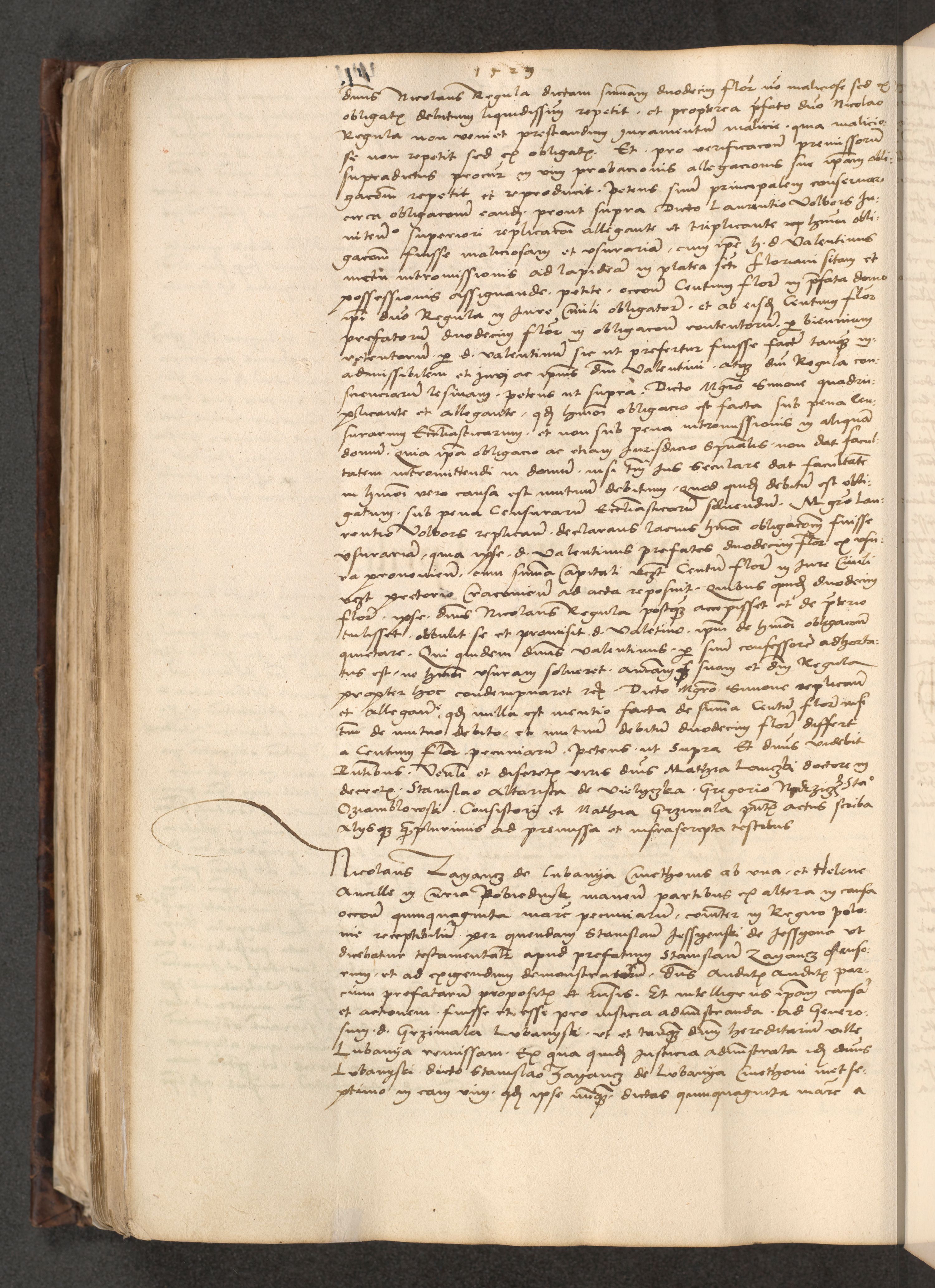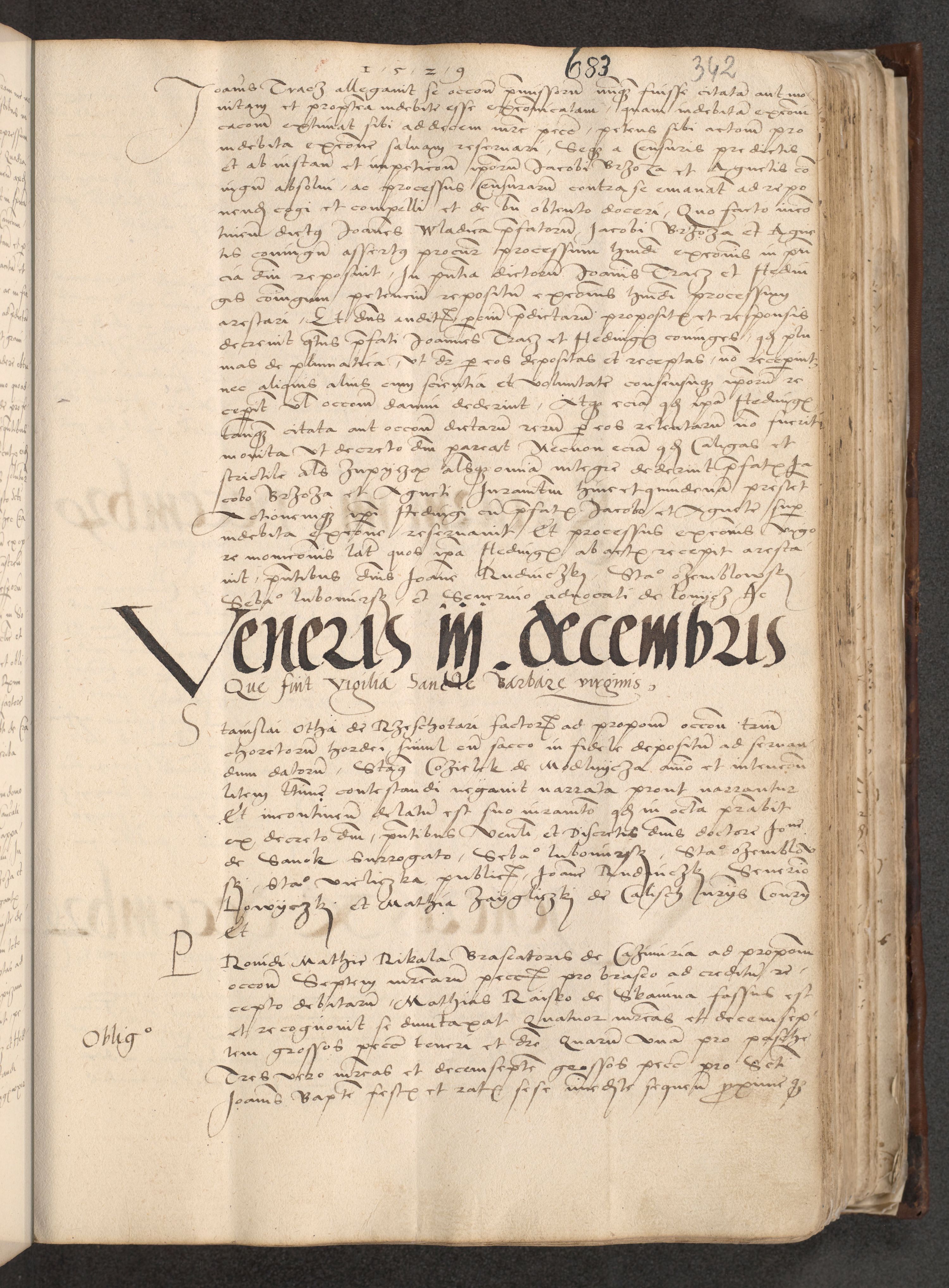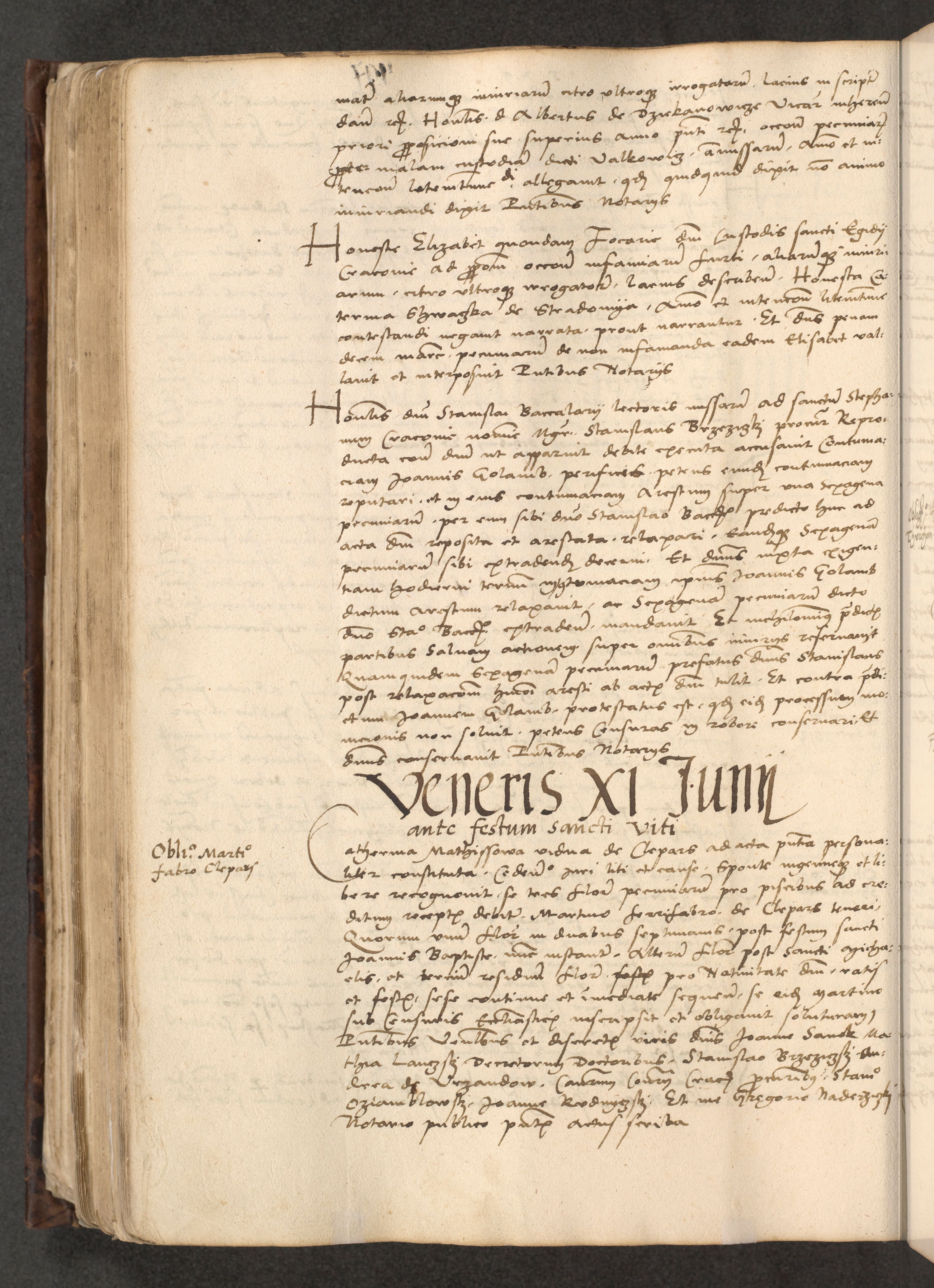 INRI. Acta actorum, obligacionum et sentenciarum tam interlocutoriarum quam diffinitivarum coram reverendo patre ac egregio viro domino Jacobo Erciss[o]wski decretorum doctorem, canonico et officiali generali Cracoviensi ad annum Domini 1528, indicionem primam, pontificatus sanctissimi in Christo patris et domini domini Clementis divina probidendcia pape seprtimi, annum quintum, per Stanislaum de Mordi legalem consistorii notarium omine felici inchoantur