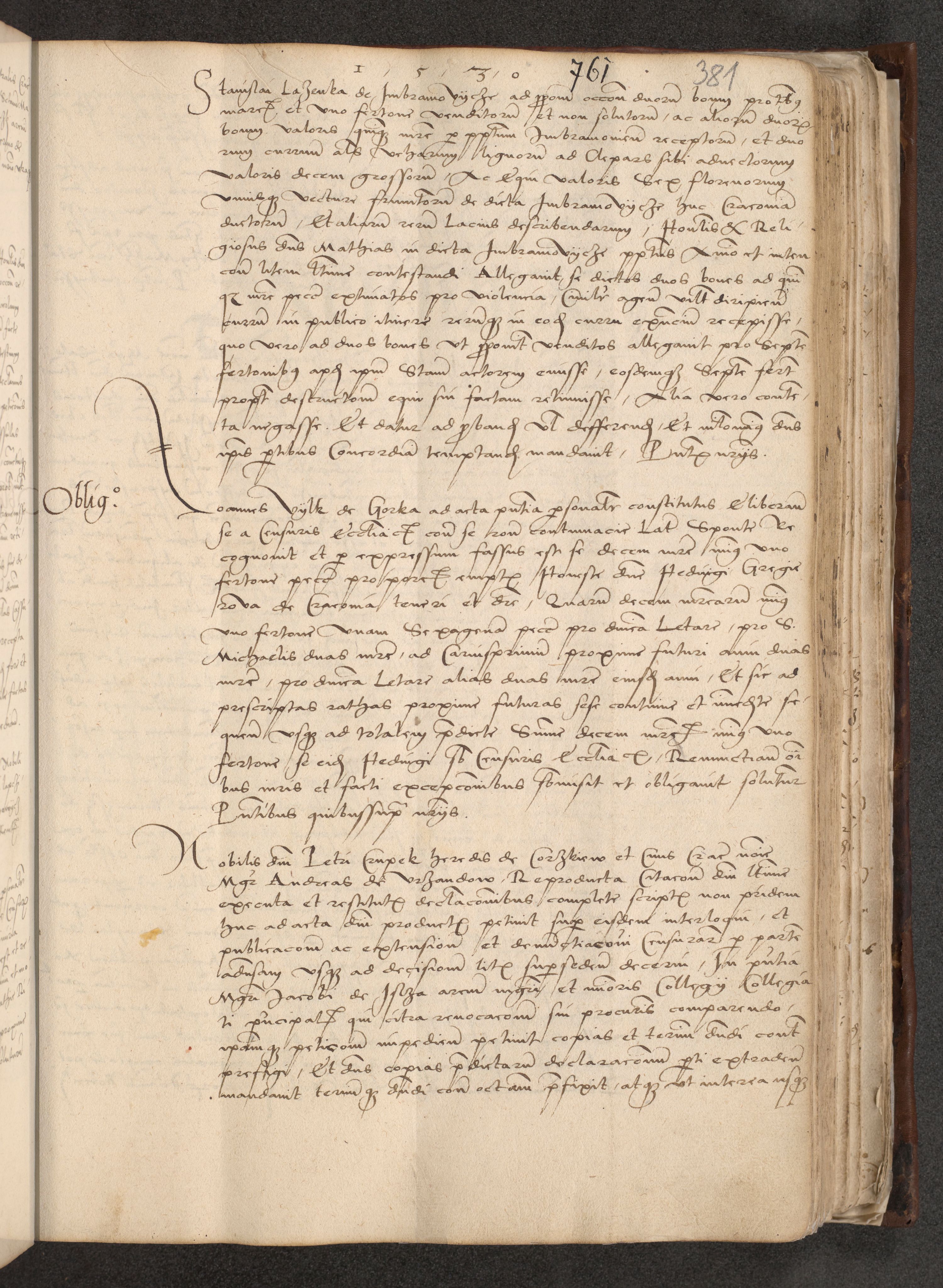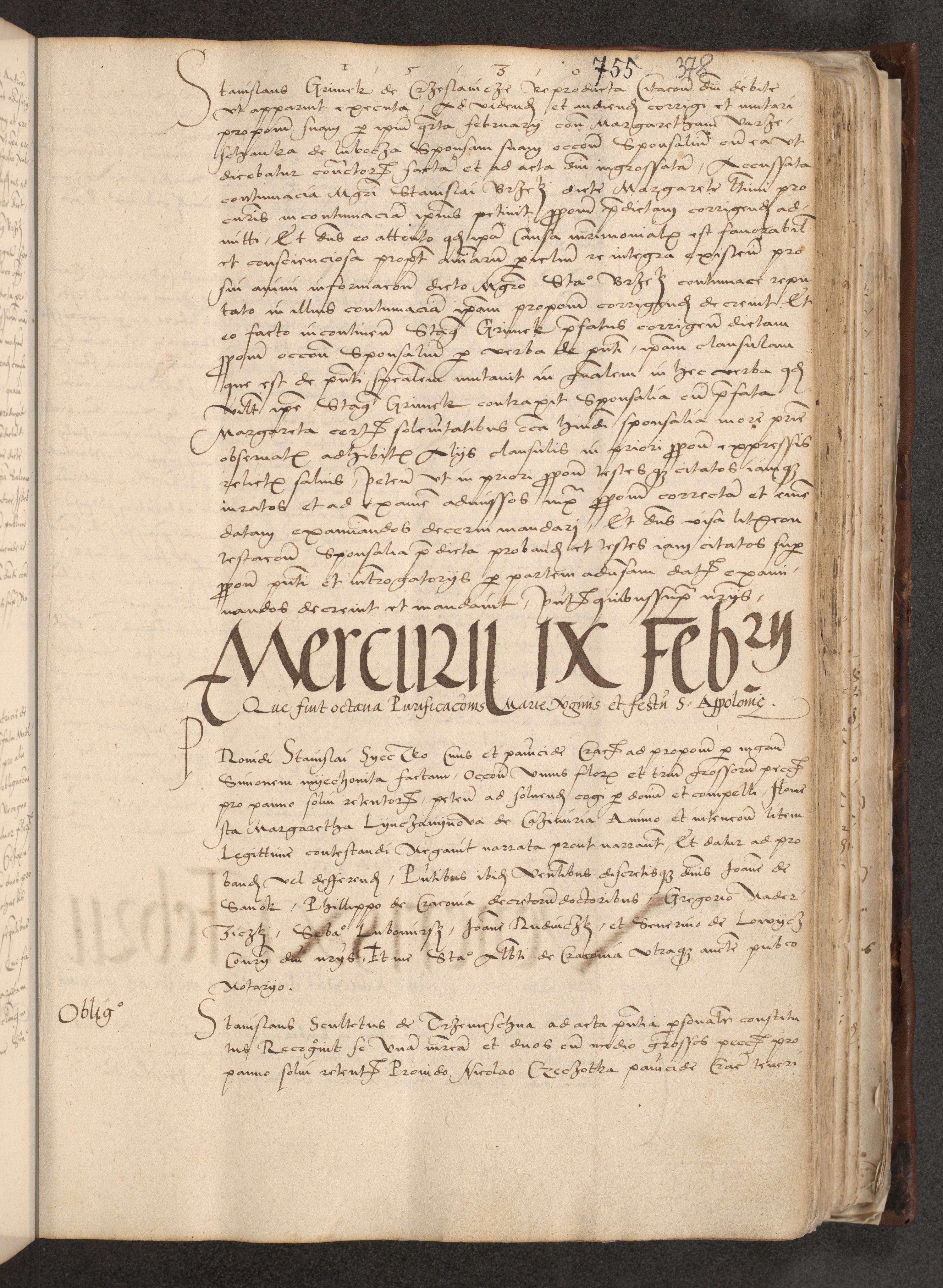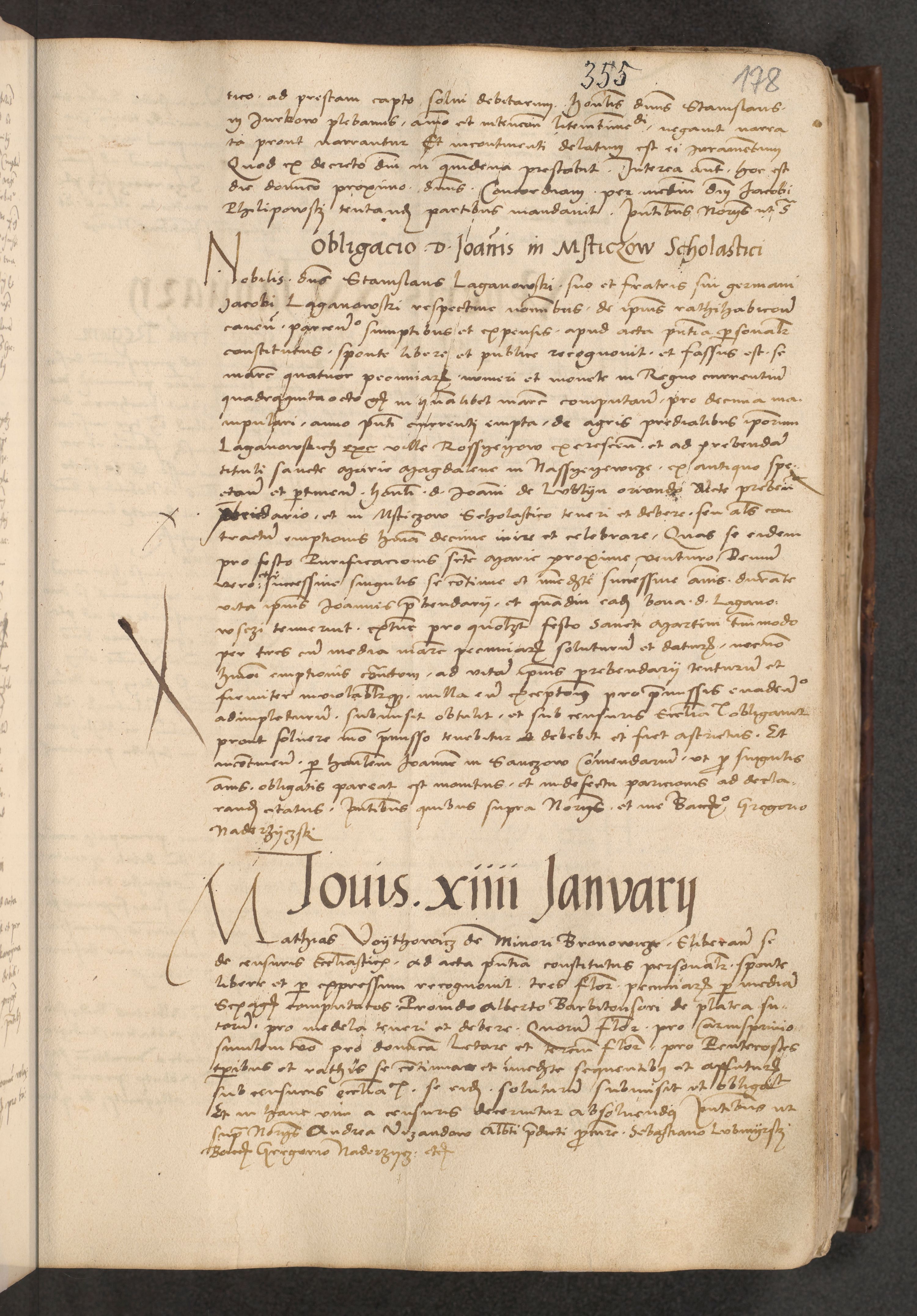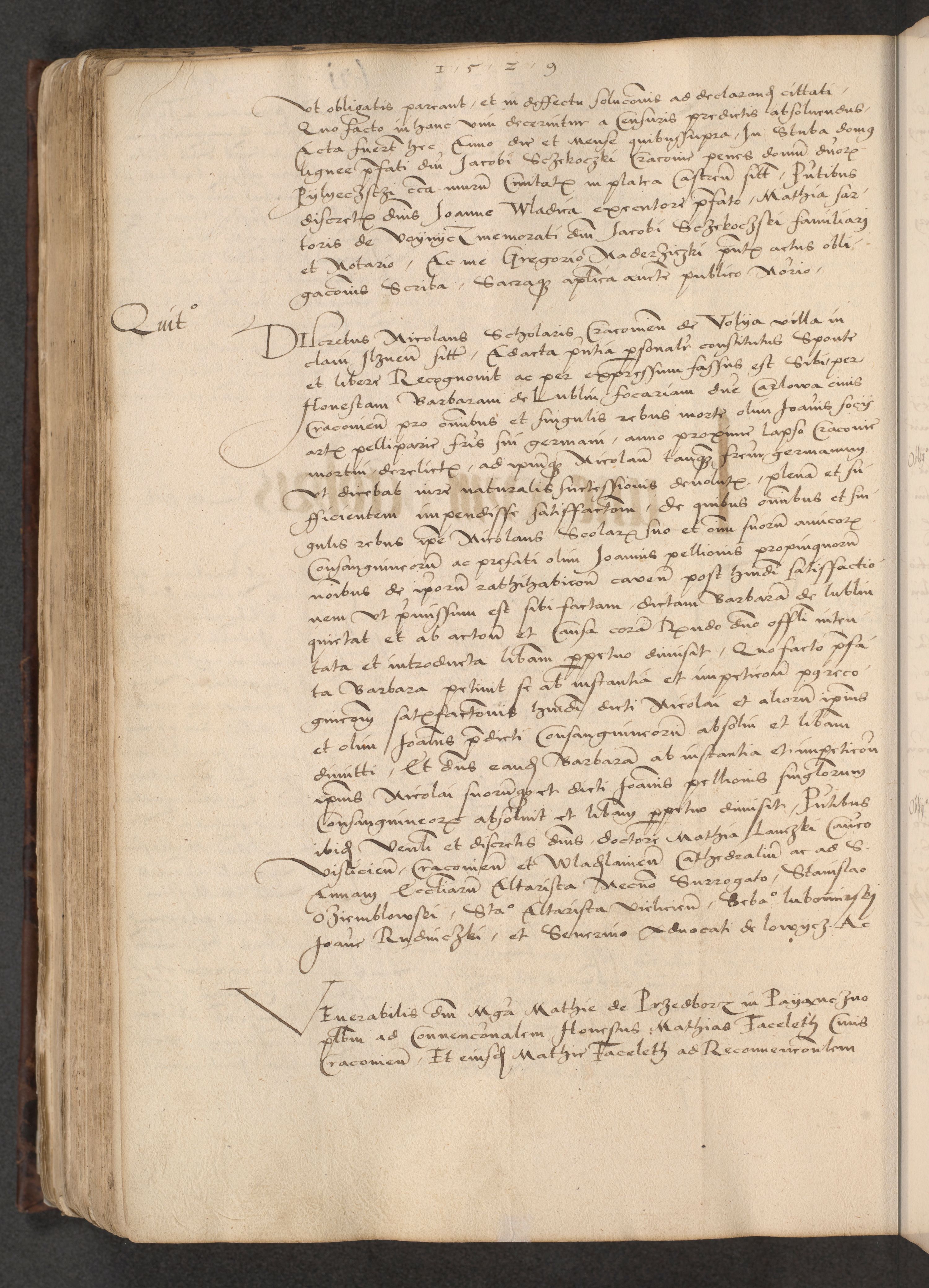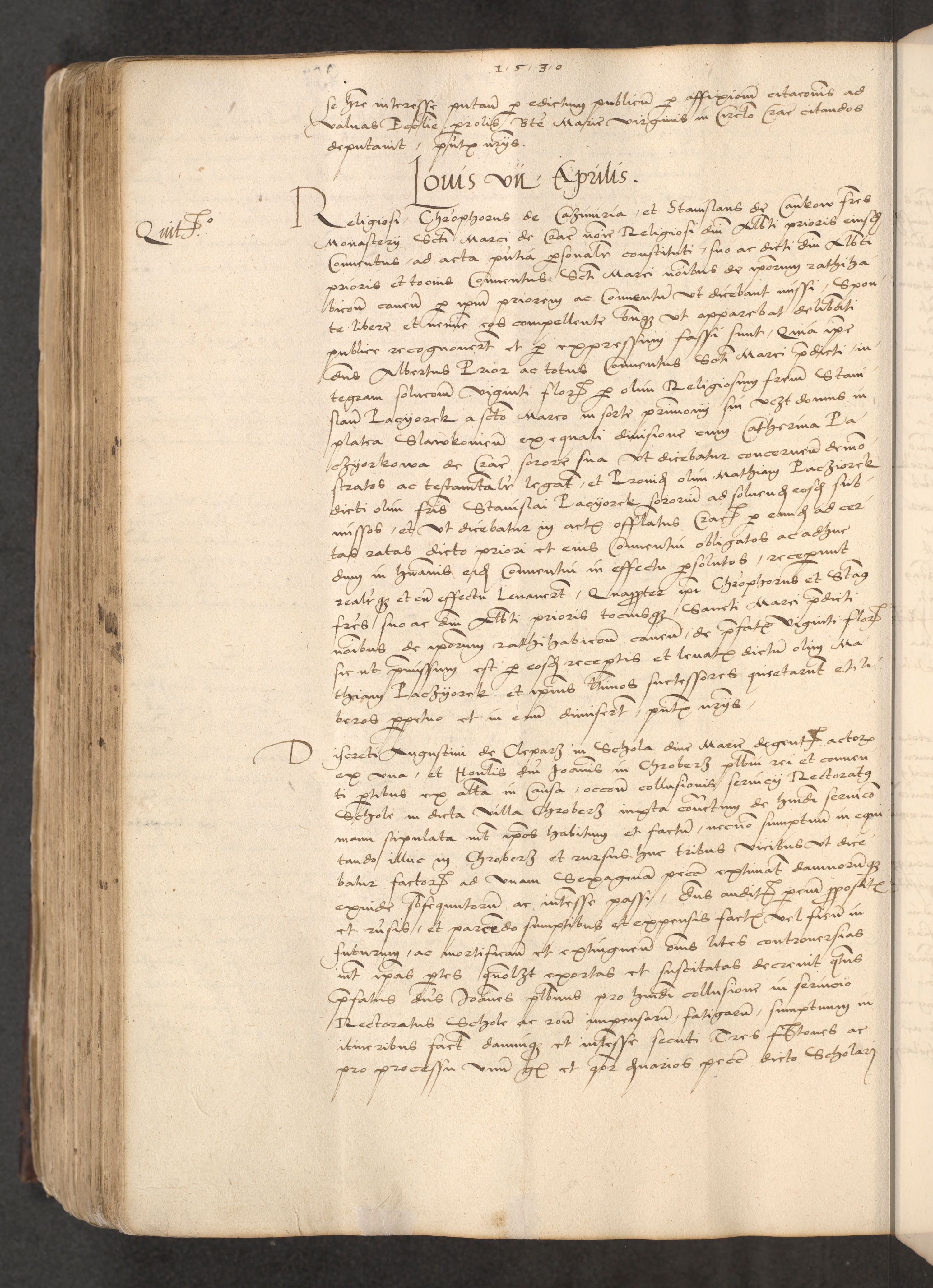 INRI. Acta actorum, obligacionum et sentenciarum tam interlocutoriarum quam diffinitivarum coram reverendo patre ac egregio viro domino Jacobo Erciss[o]wski decretorum doctorem, canonico et officiali generali Cracoviensi ad annum Domini 1528, indicionem primam, pontificatus sanctissimi in Christo patris et domini domini Clementis divina probidendcia pape seprtimi, annum quintum, per Stanislaum de Mordi legalem consistorii notarium omine felici inchoantur