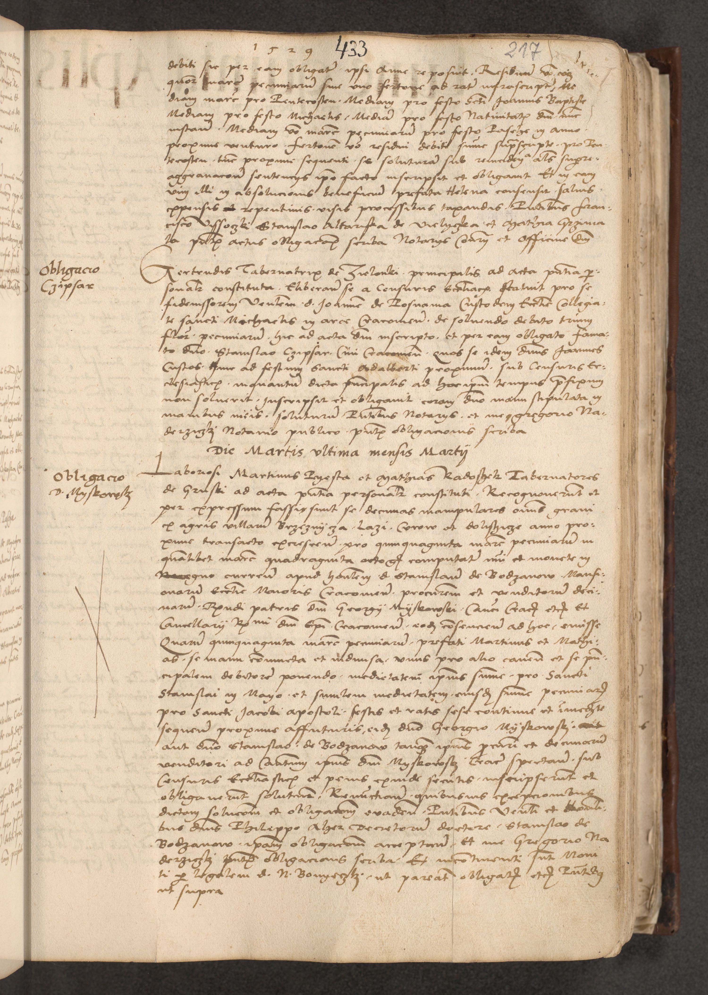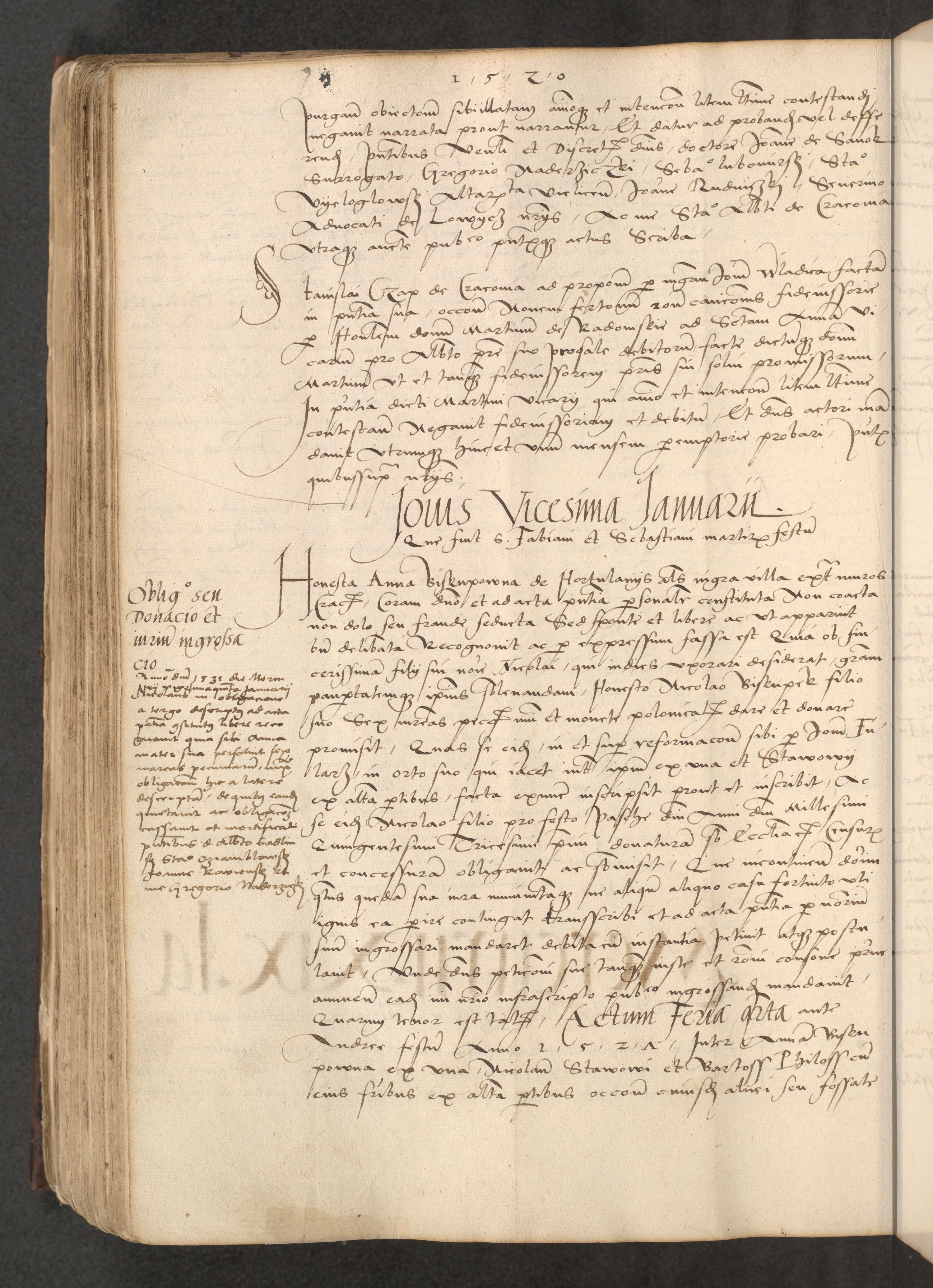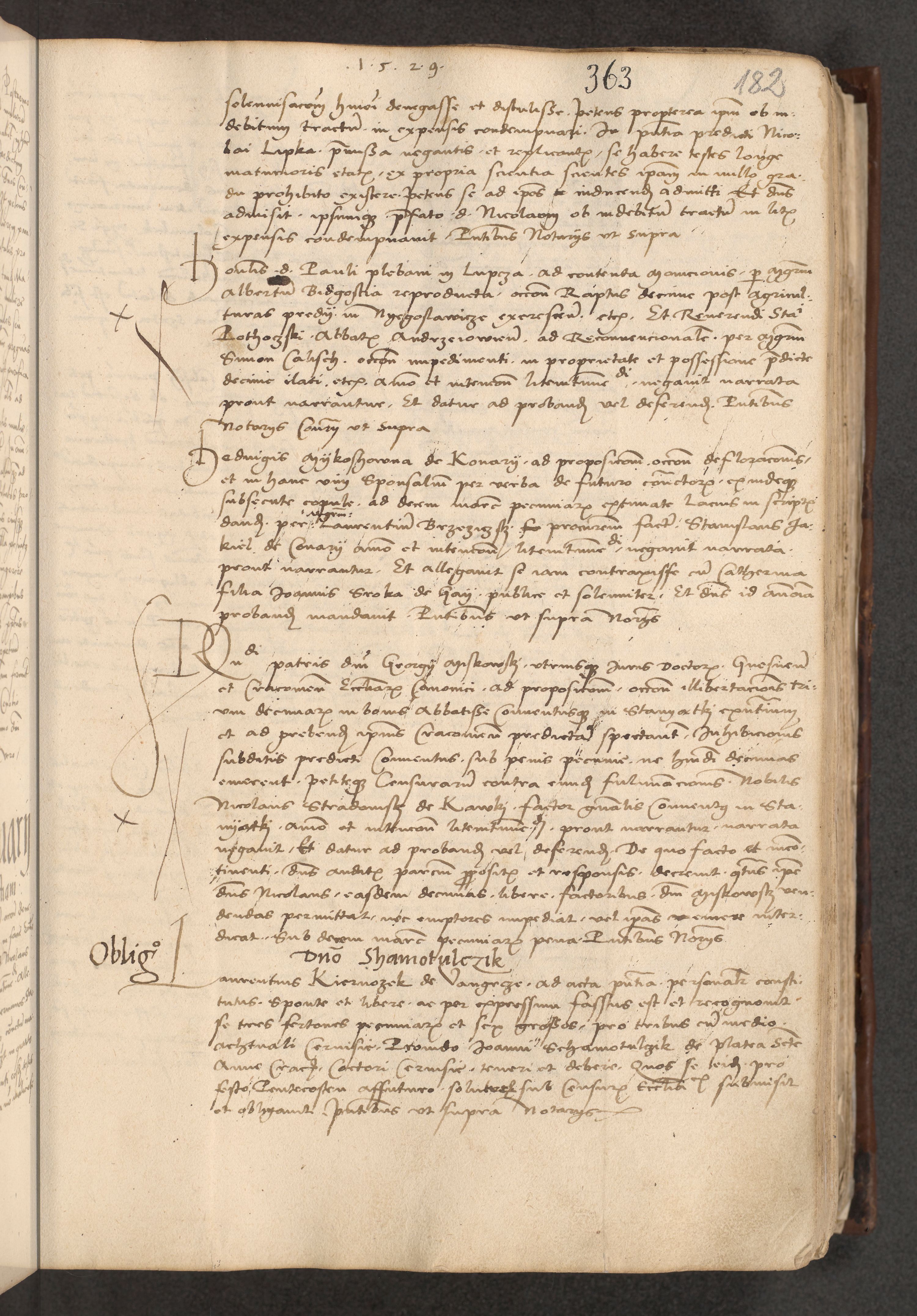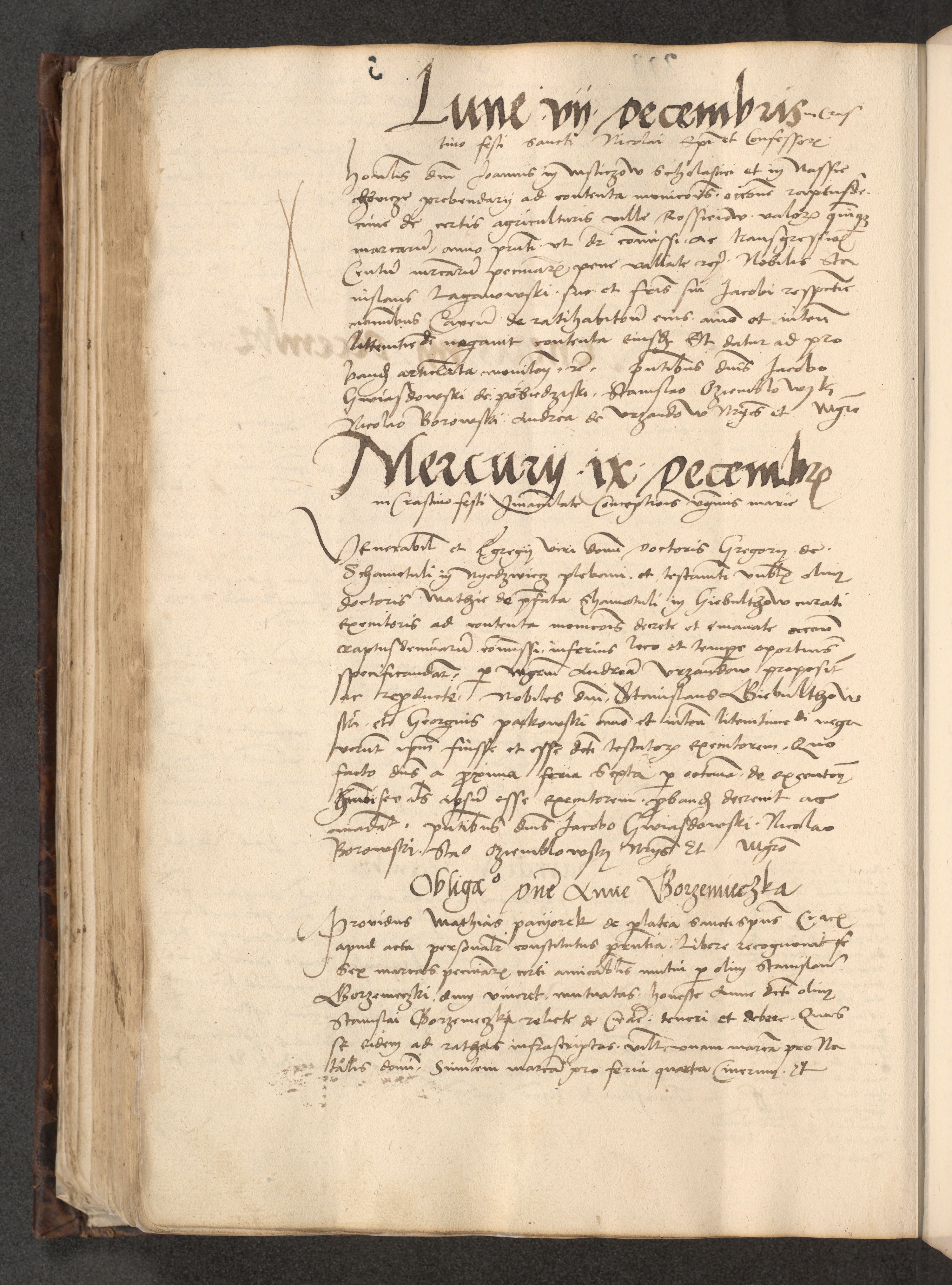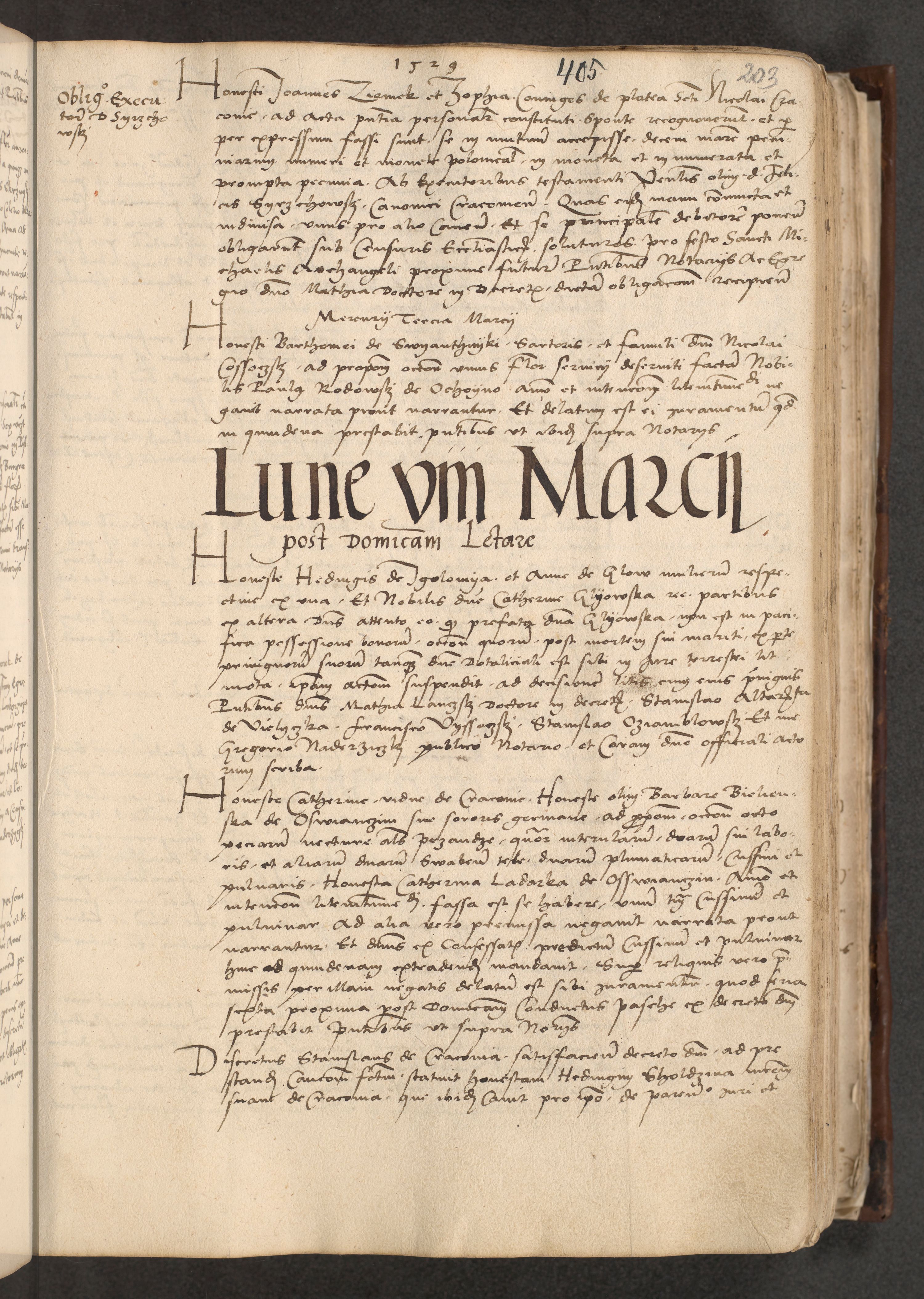 INRI. Acta actorum, obligacionum et sentenciarum tam interlocutoriarum quam diffinitivarum coram reverendo patre ac egregio viro domino Jacobo Erciss[o]wski decretorum doctorem, canonico et officiali generali Cracoviensi ad annum Domini 1528, indicionem primam, pontificatus sanctissimi in Christo patris et domini domini Clementis divina probidendcia pape seprtimi, annum quintum, per Stanislaum de Mordi legalem consistorii notarium omine felici inchoantur