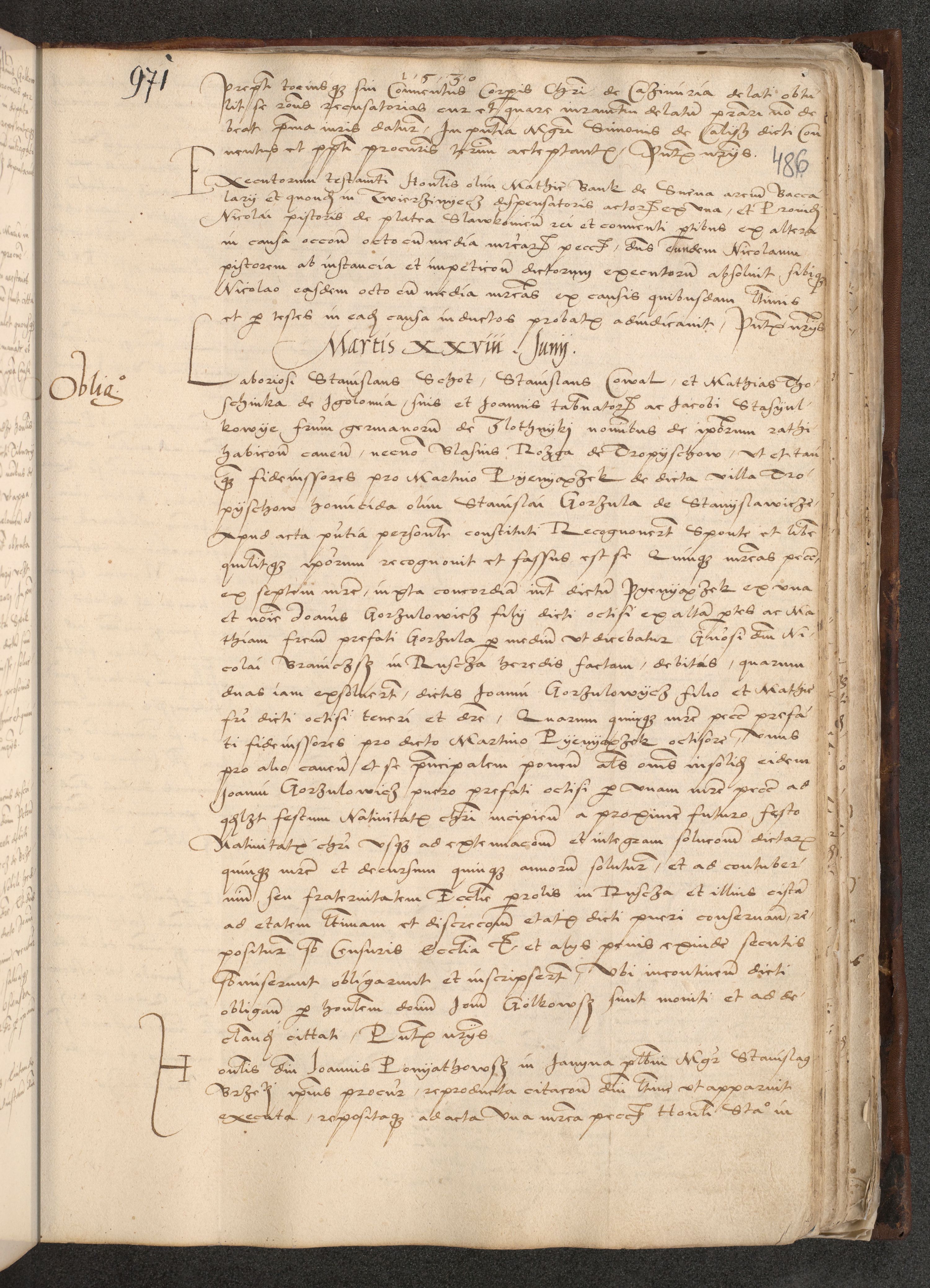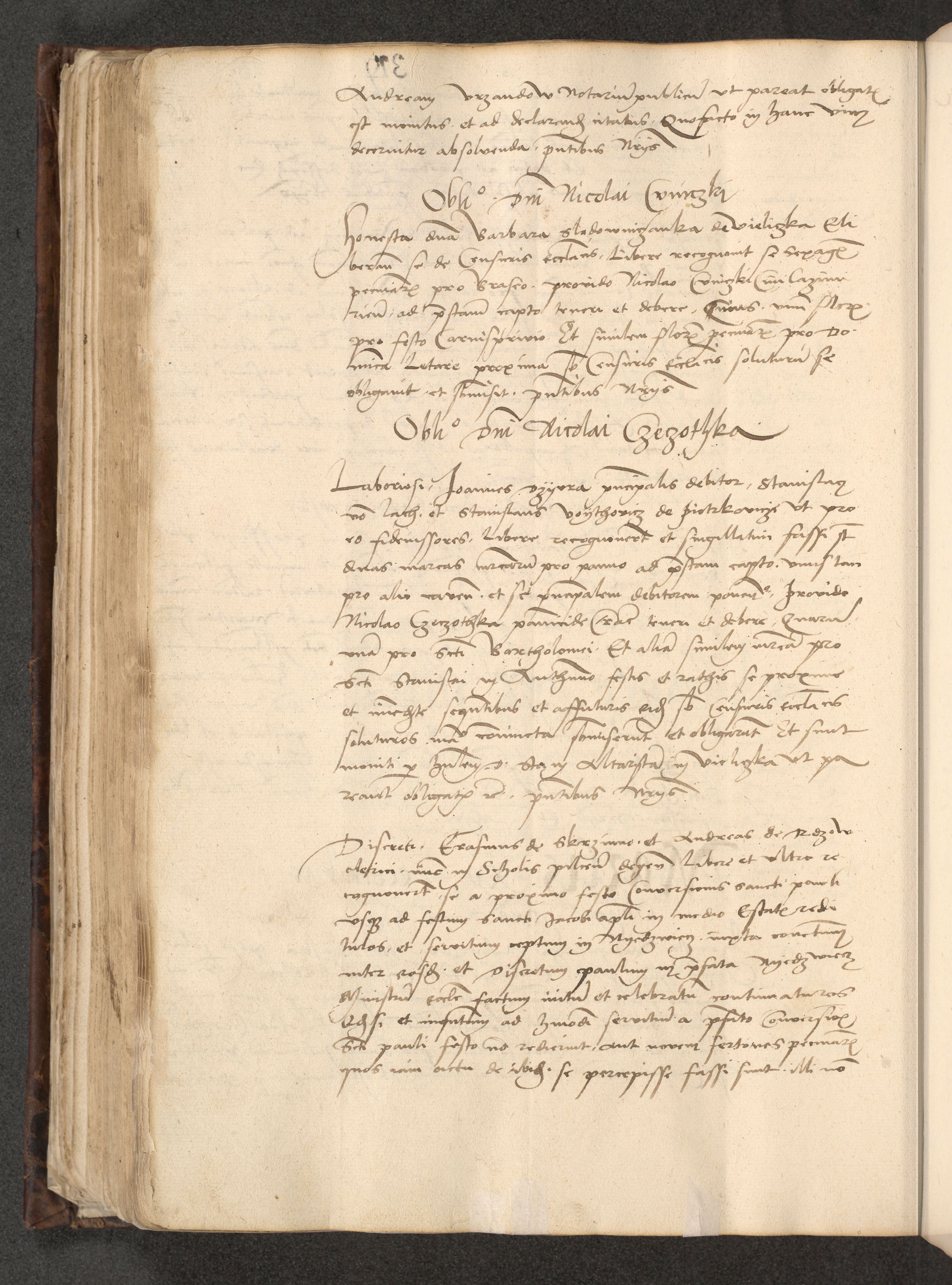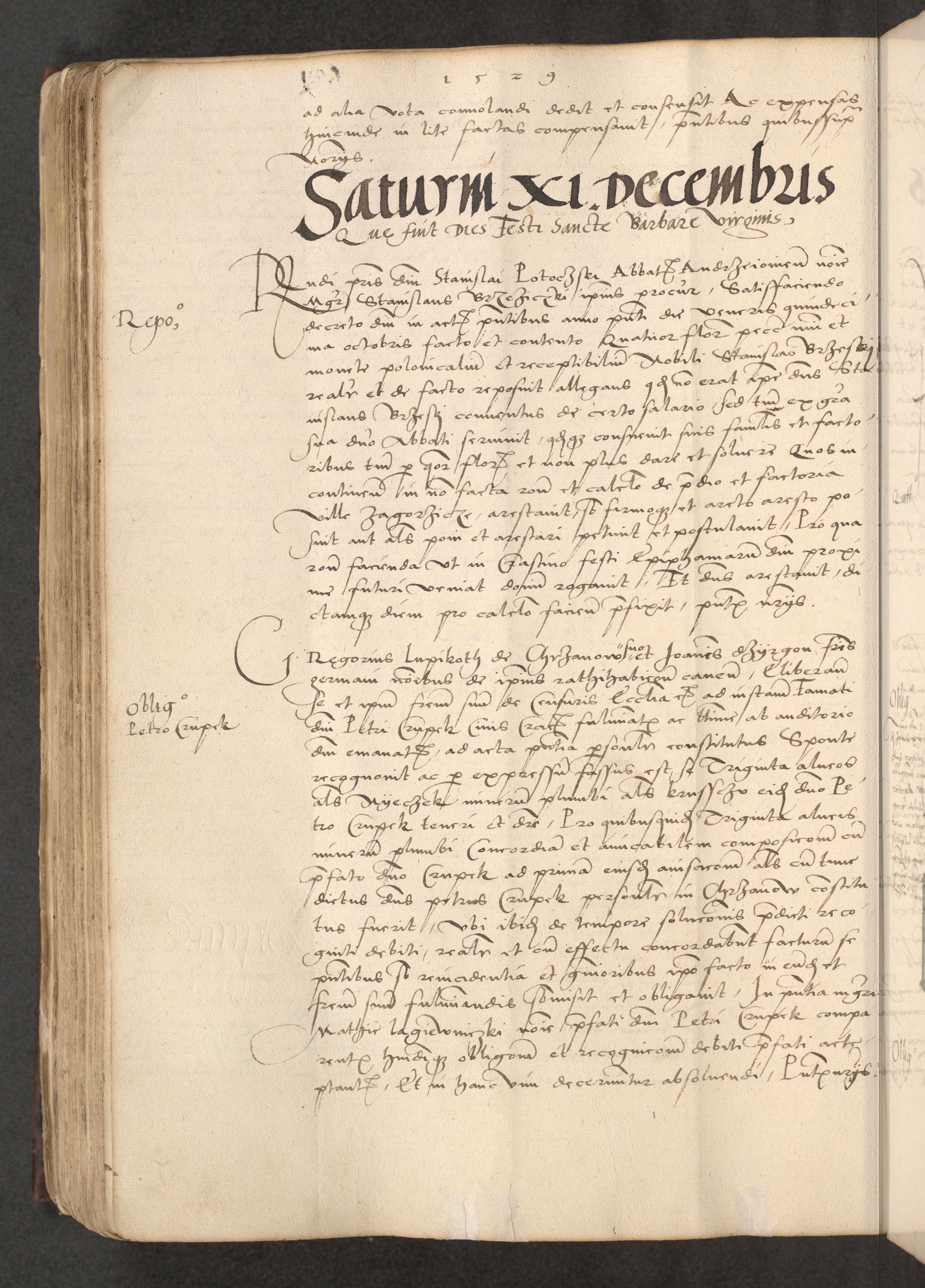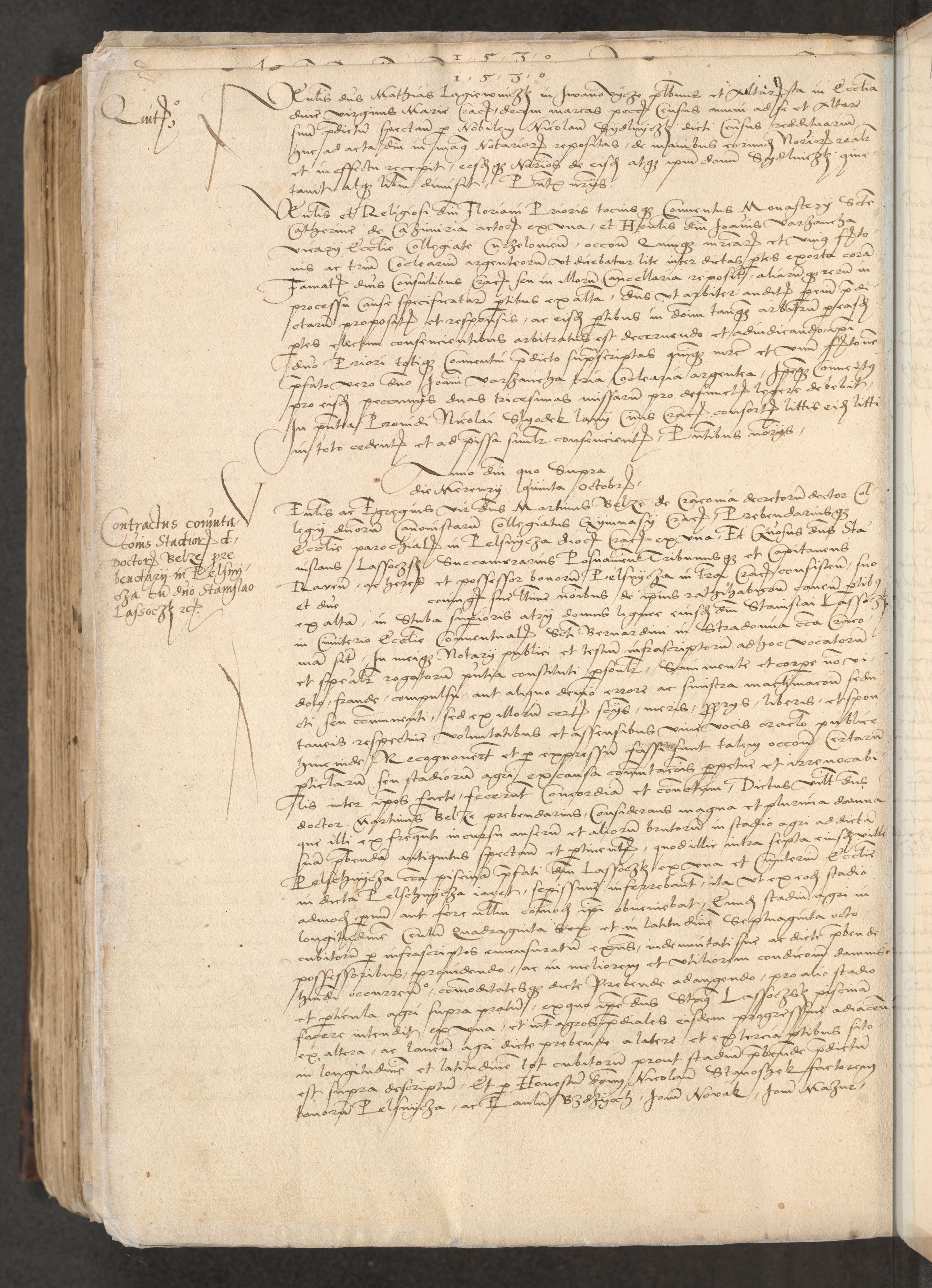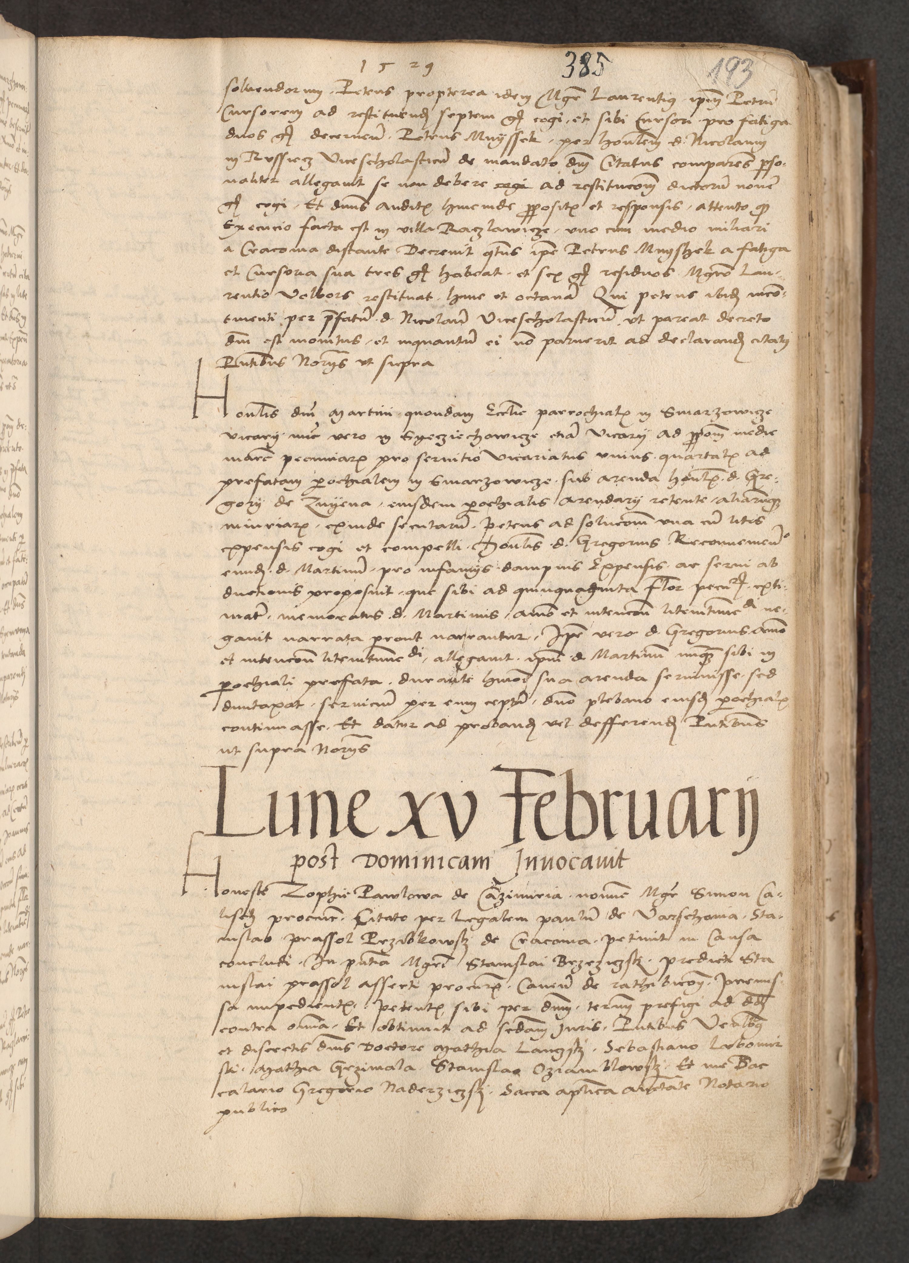 INRI. Acta actorum, obligacionum et sentenciarum tam interlocutoriarum quam diffinitivarum coram reverendo patre ac egregio viro domino Jacobo Erciss[o]wski decretorum doctorem, canonico et officiali generali Cracoviensi ad annum Domini 1528, indicionem primam, pontificatus sanctissimi in Christo patris et domini domini Clementis divina probidendcia pape seprtimi, annum quintum, per Stanislaum de Mordi legalem consistorii notarium omine felici inchoantur
