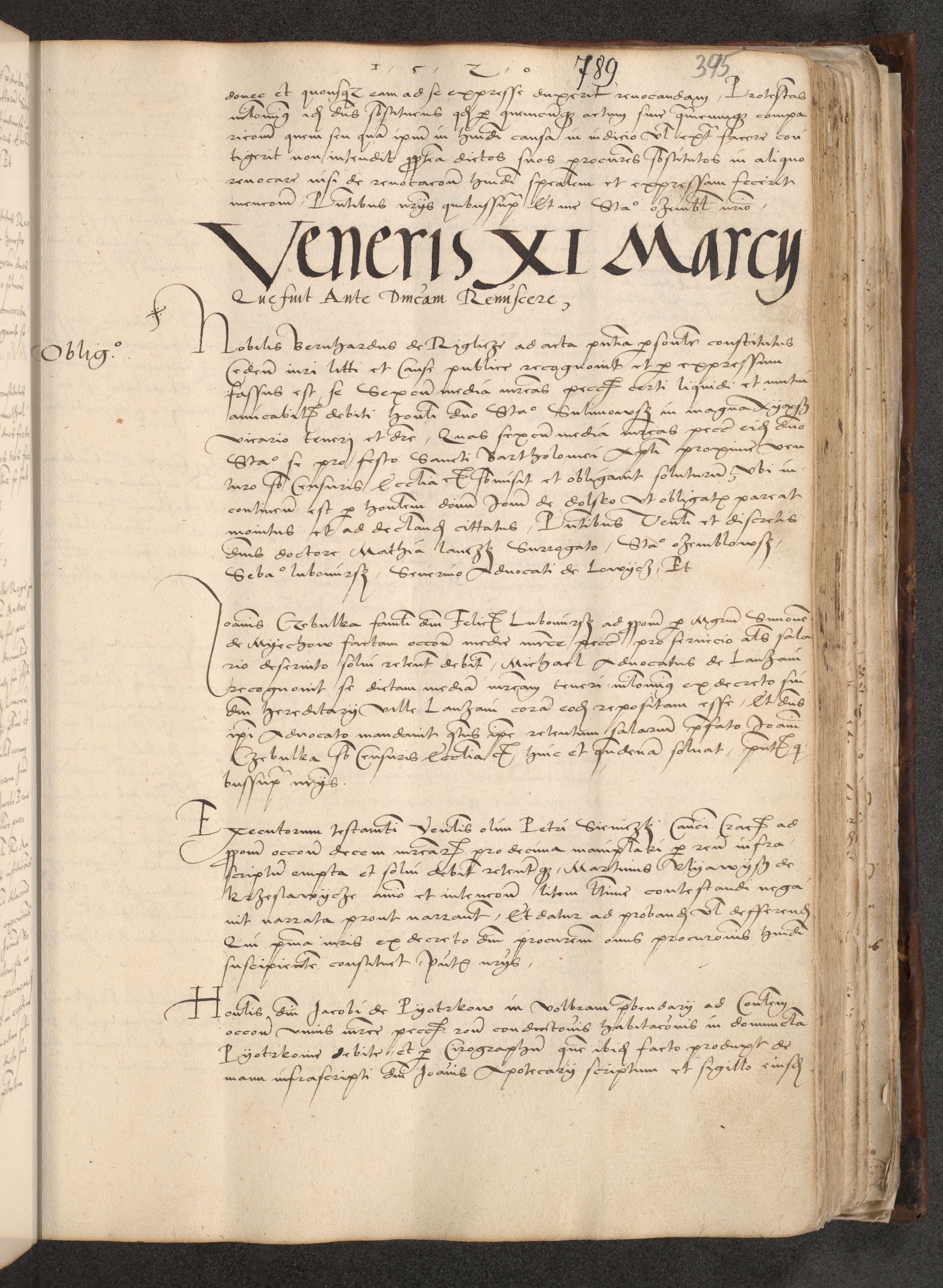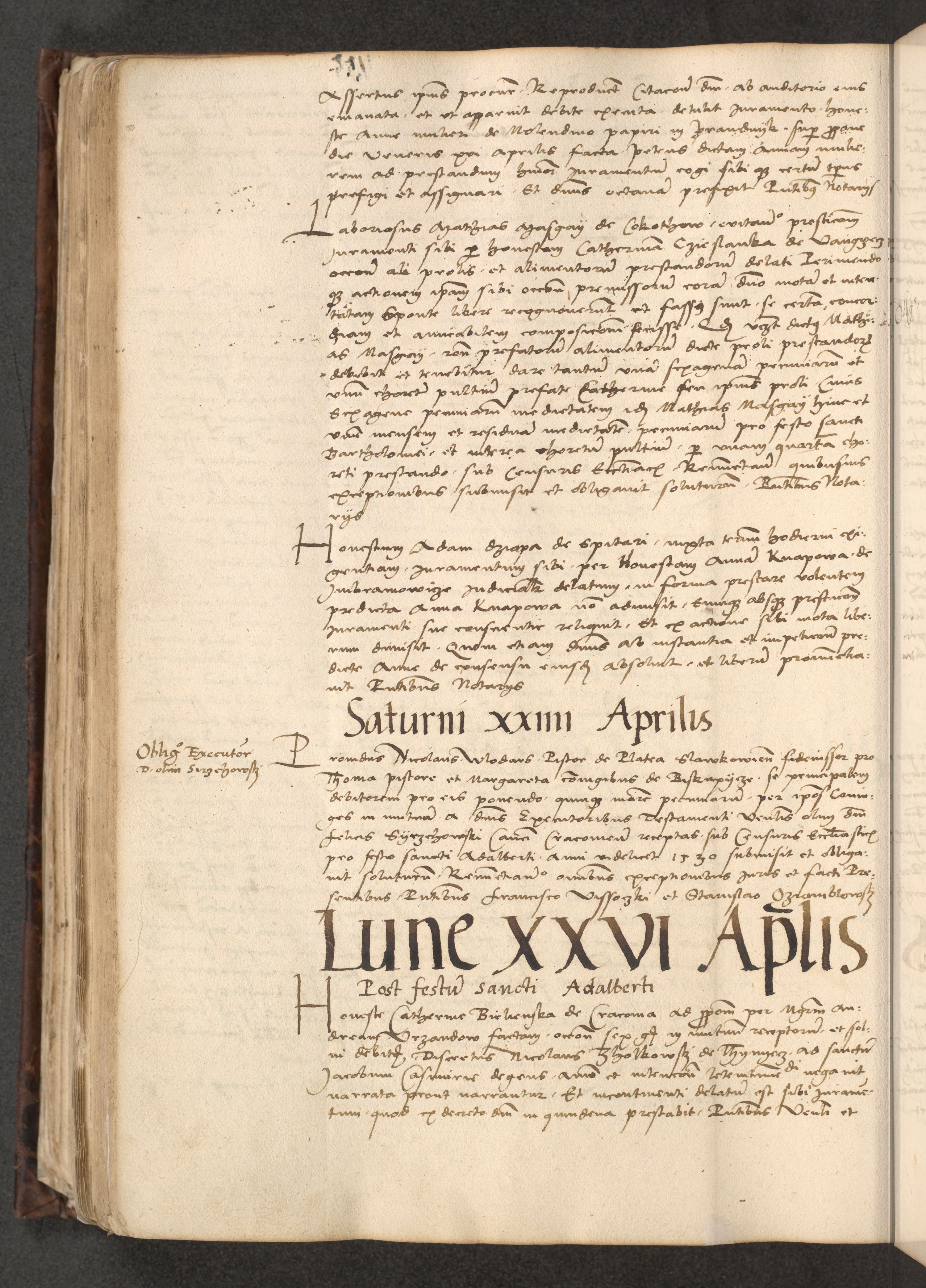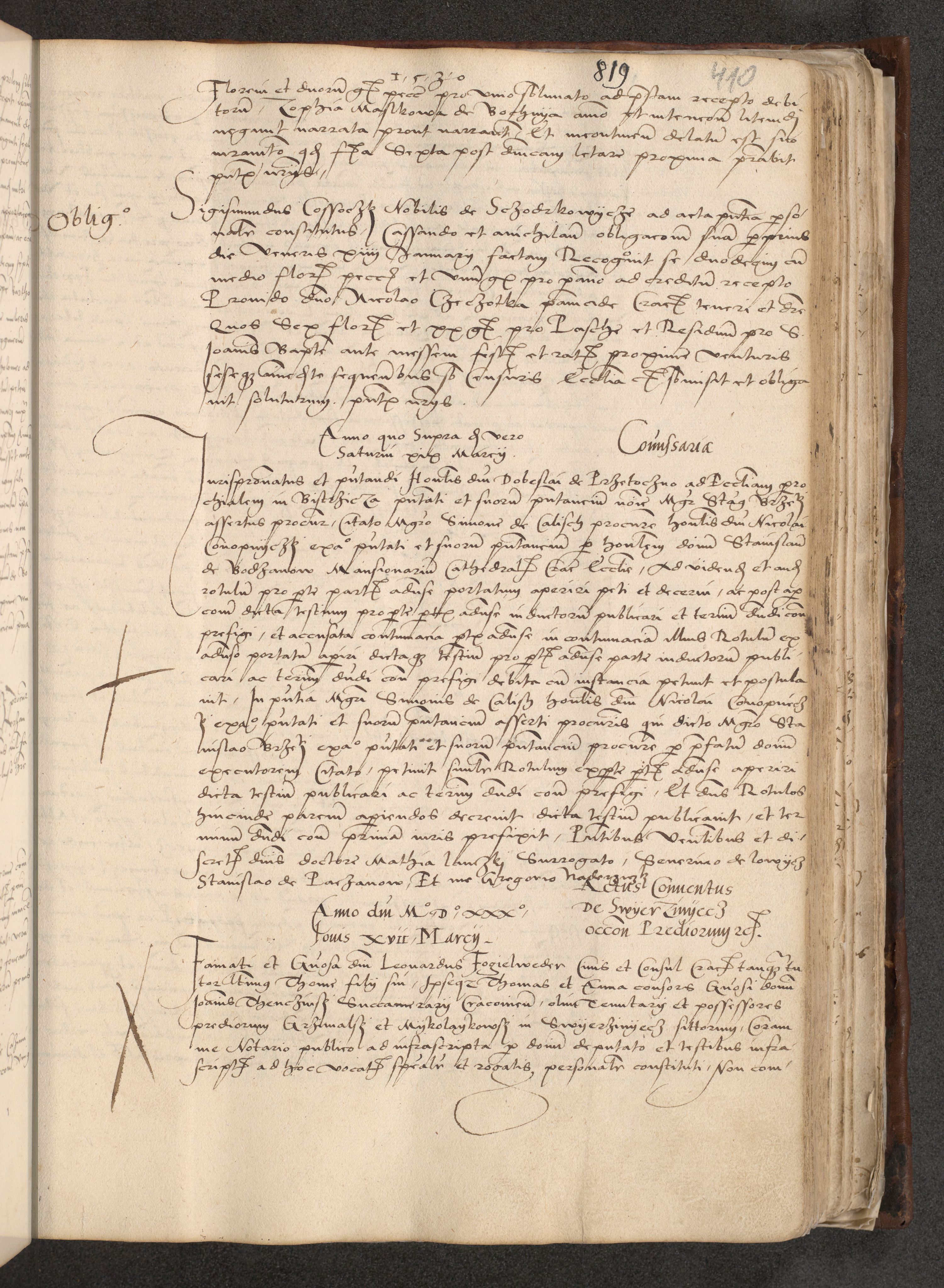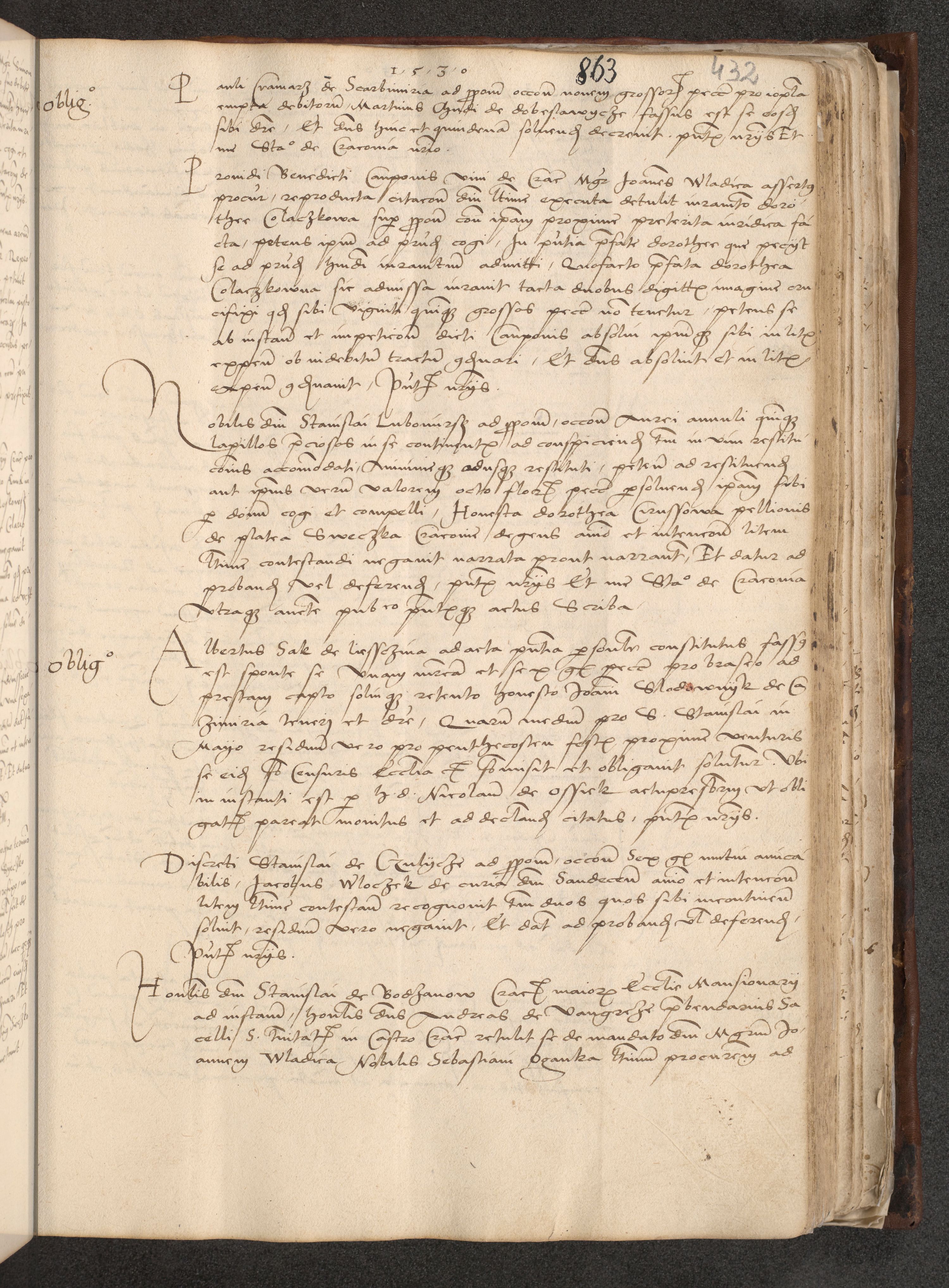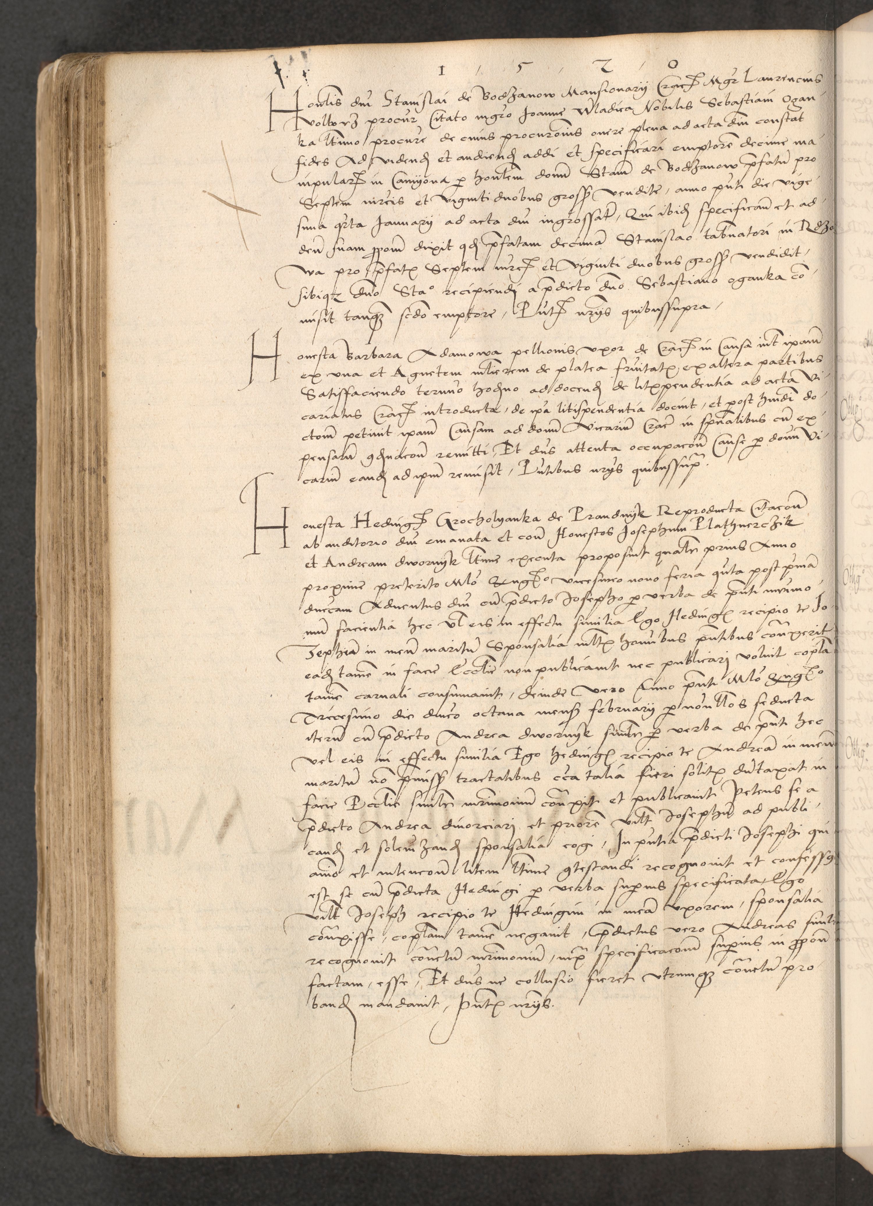 INRI. Acta actorum, obligacionum et sentenciarum tam interlocutoriarum quam diffinitivarum coram reverendo patre ac egregio viro domino Jacobo Erciss[o]wski decretorum doctorem, canonico et officiali generali Cracoviensi ad annum Domini 1528, indicionem primam, pontificatus sanctissimi in Christo patris et domini domini Clementis divina probidendcia pape seprtimi, annum quintum, per Stanislaum de Mordi legalem consistorii notarium omine felici inchoantur