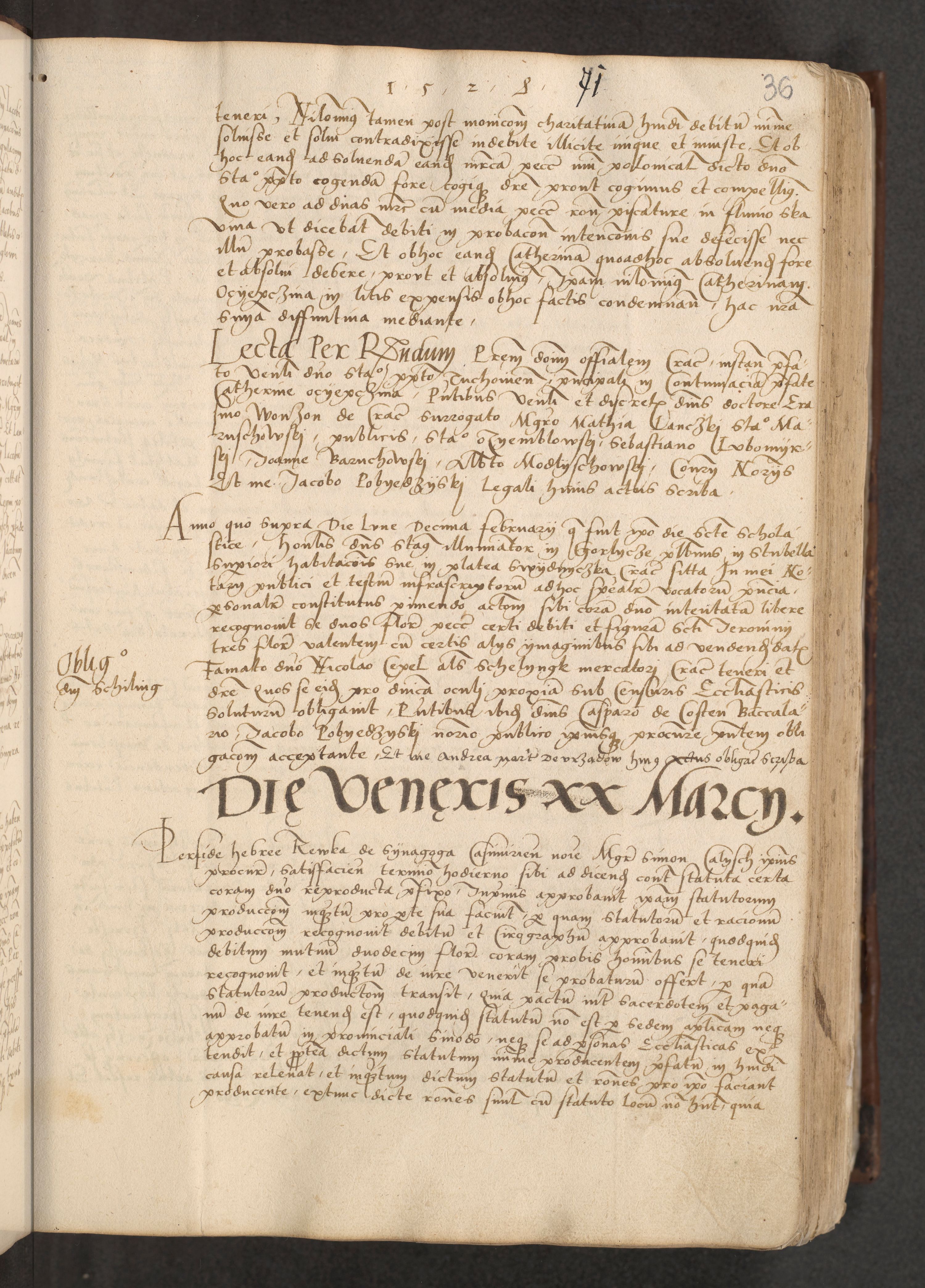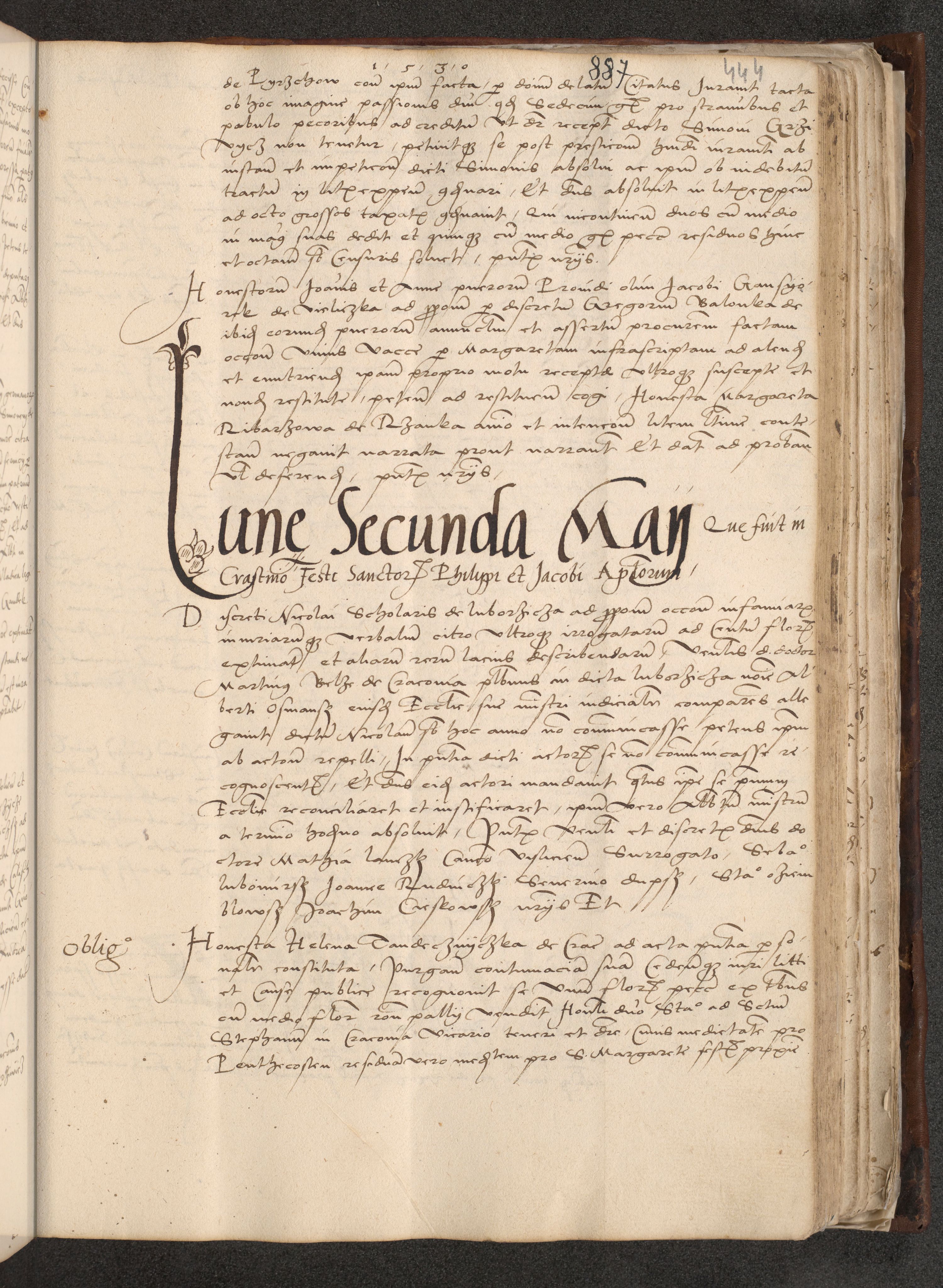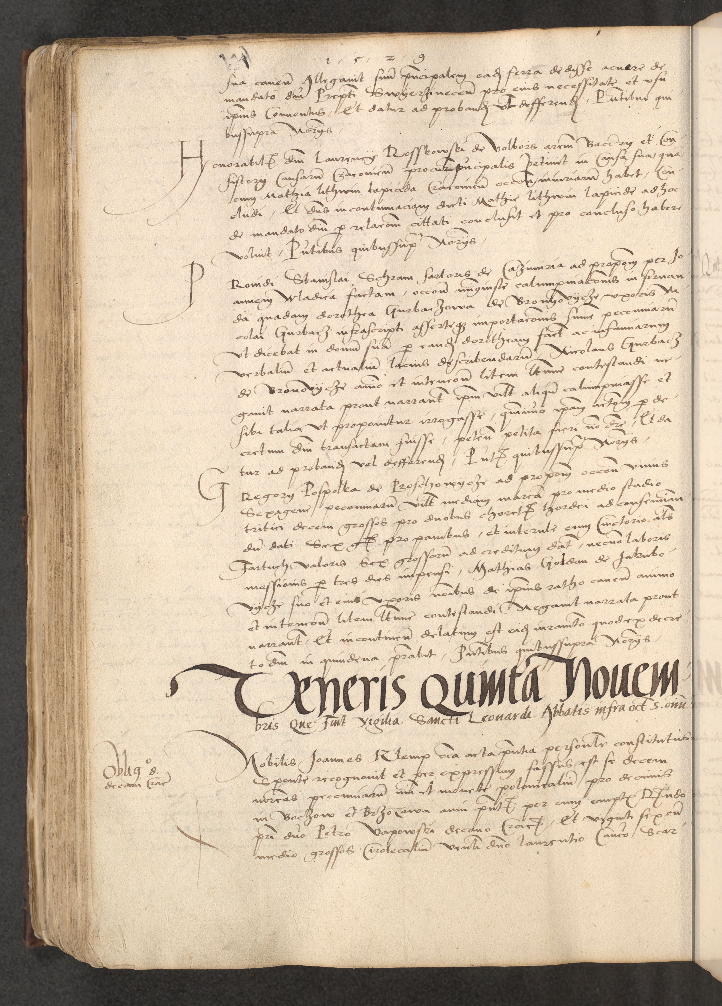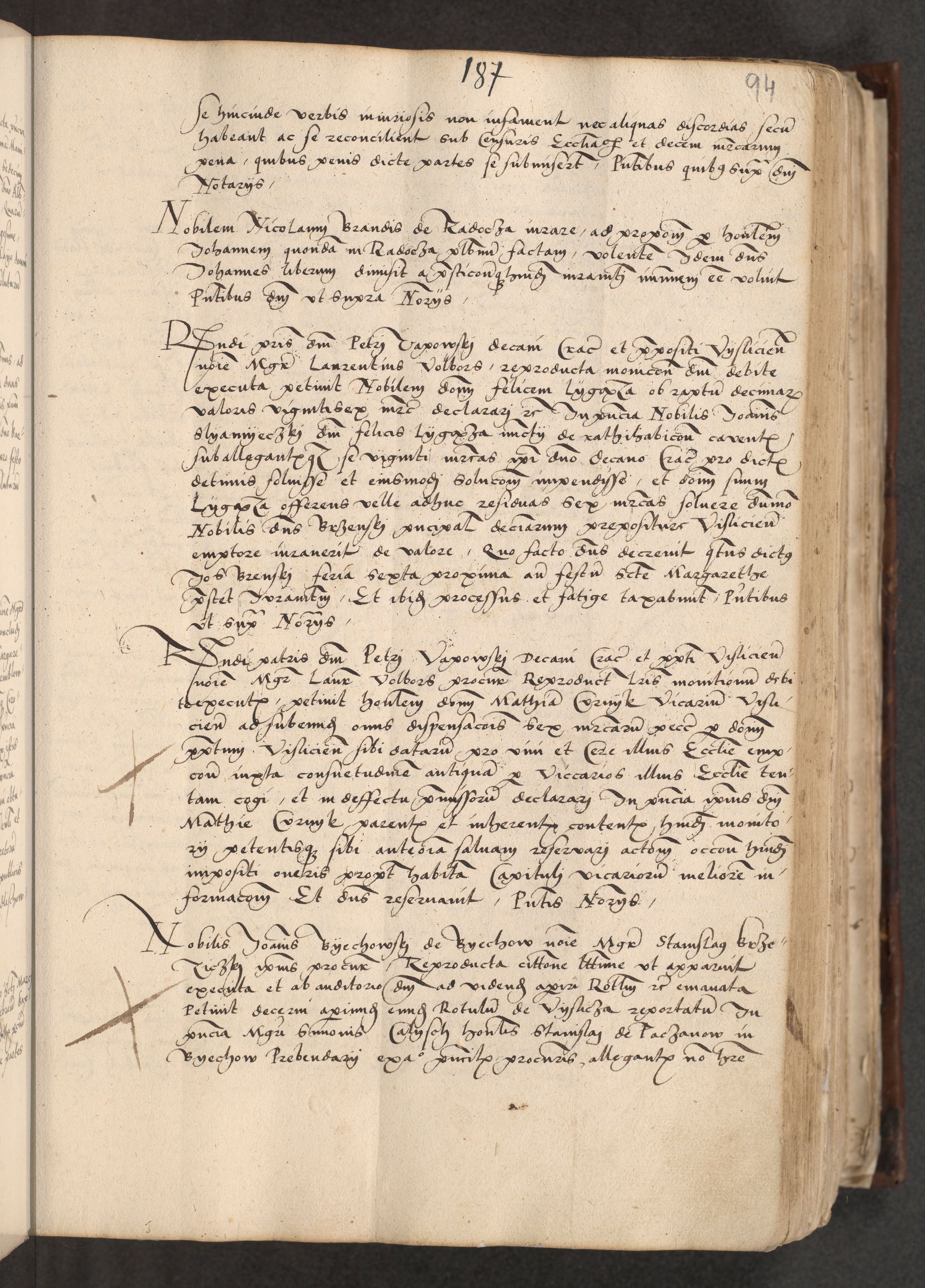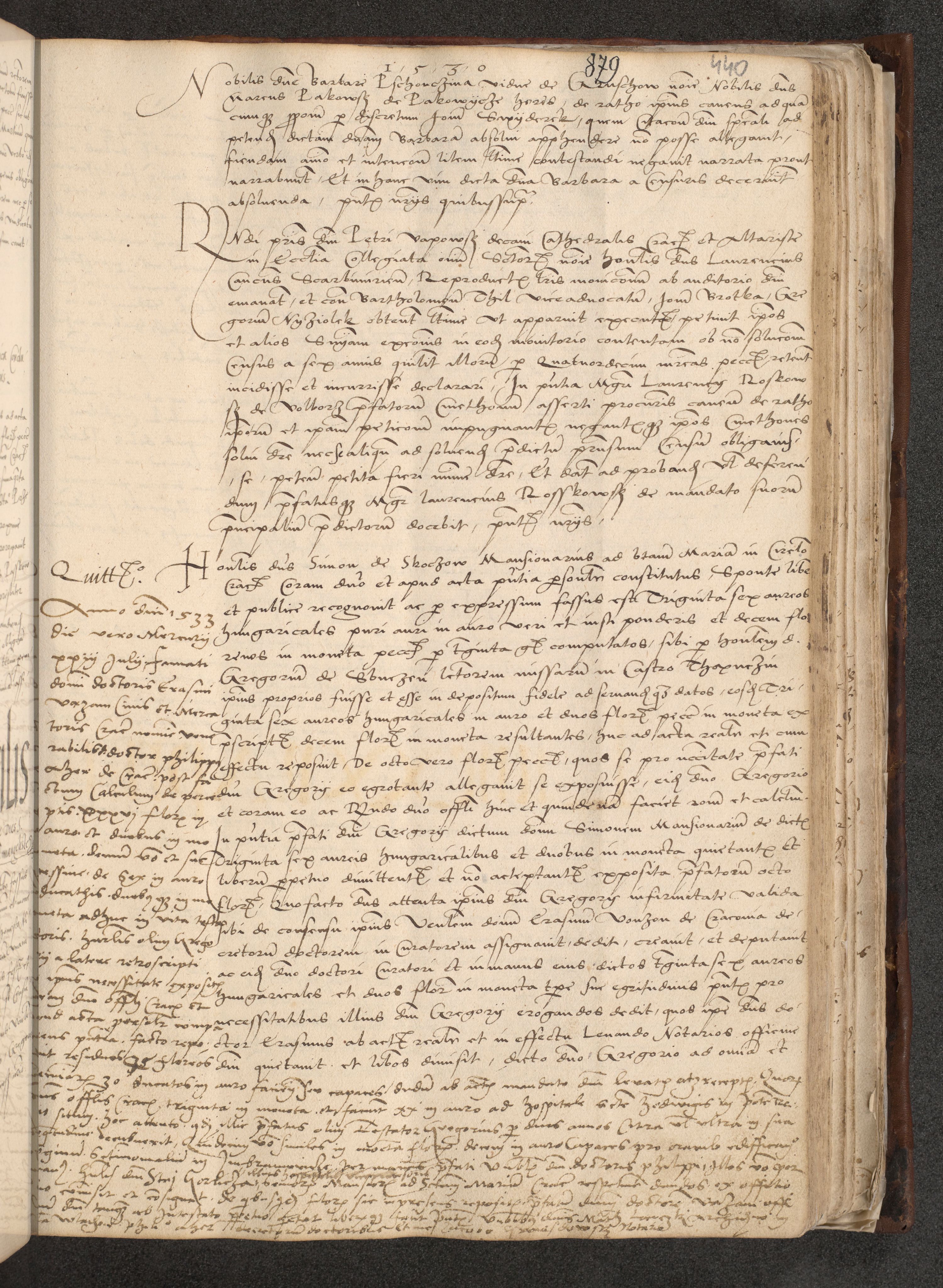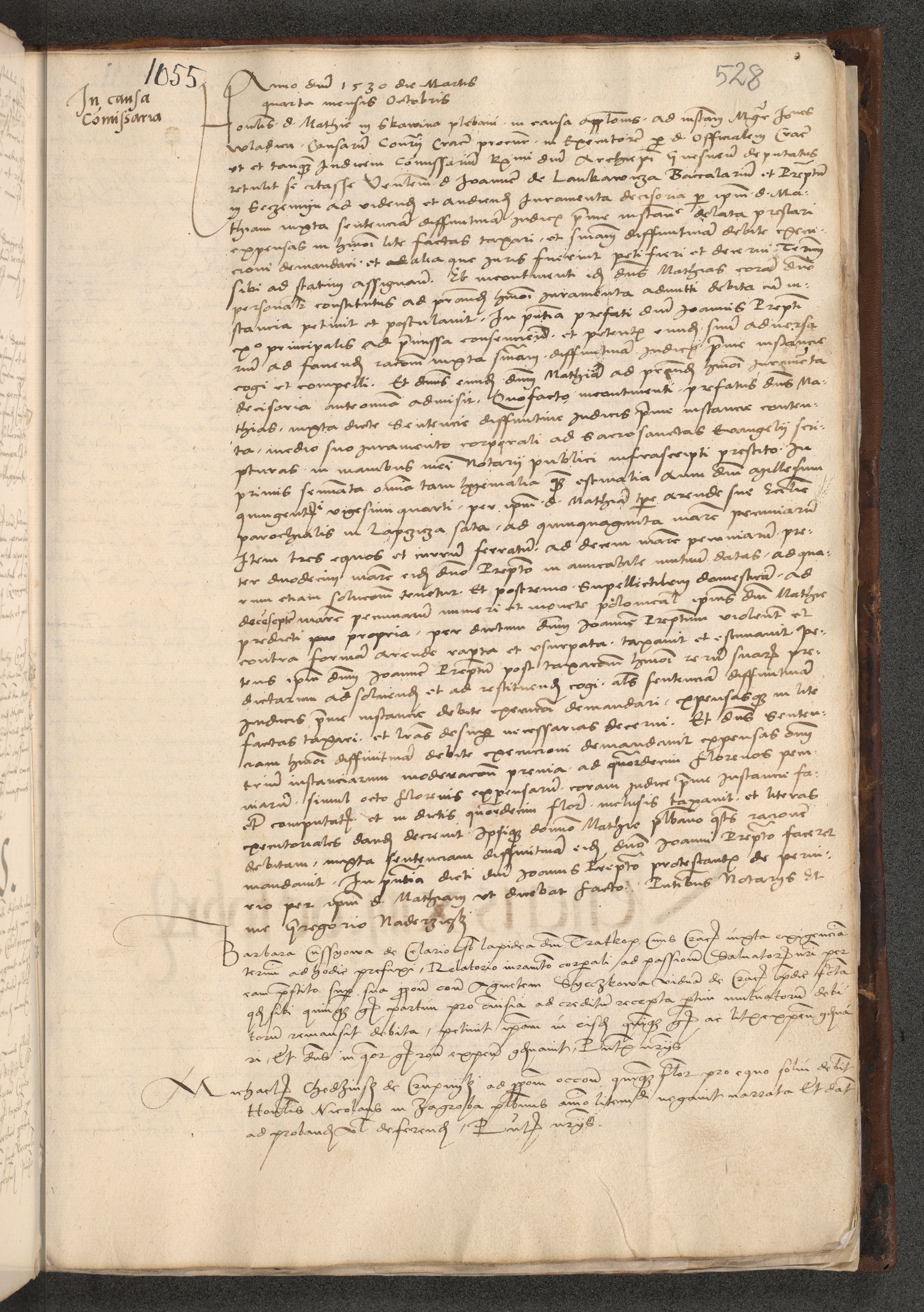 INRI. Acta actorum, obligacionum et sentenciarum tam interlocutoriarum quam diffinitivarum coram reverendo patre ac egregio viro domino Jacobo Erciss[o]wski decretorum doctorem, canonico et officiali generali Cracoviensi ad annum Domini 1528, indicionem primam, pontificatus sanctissimi in Christo patris et domini domini Clementis divina probidendcia pape seprtimi, annum quintum, per Stanislaum de Mordi legalem consistorii notarium omine felici inchoantur