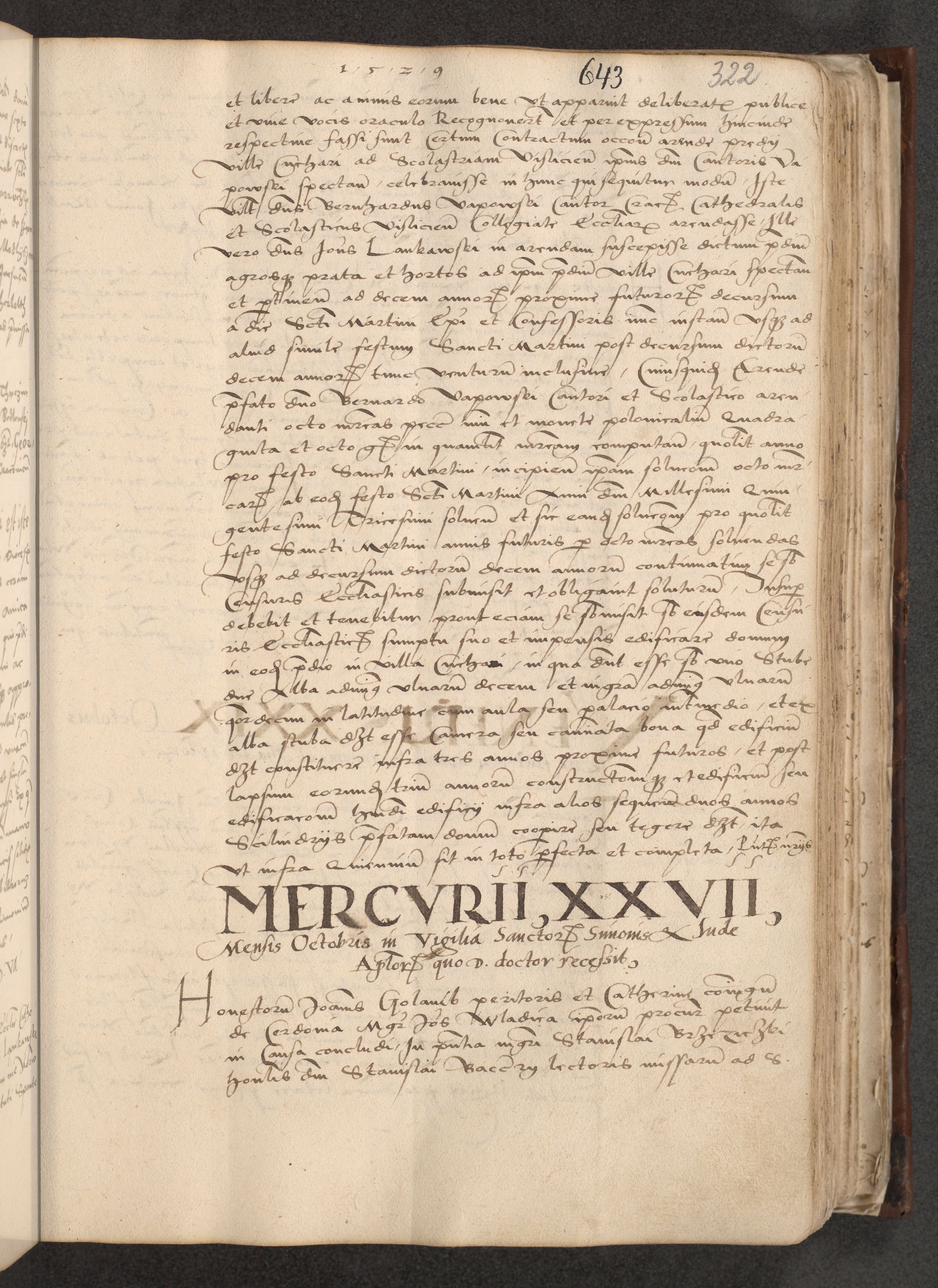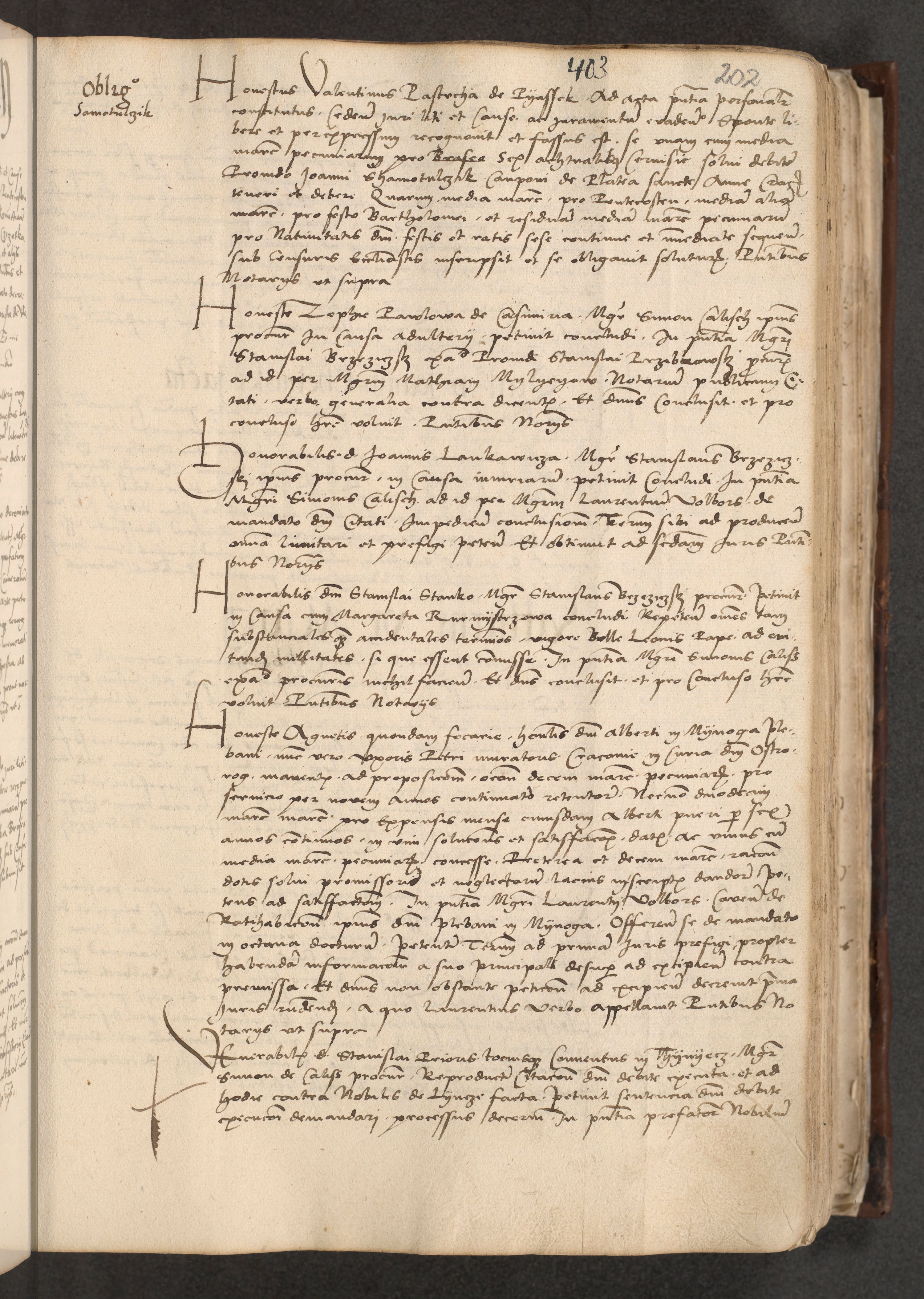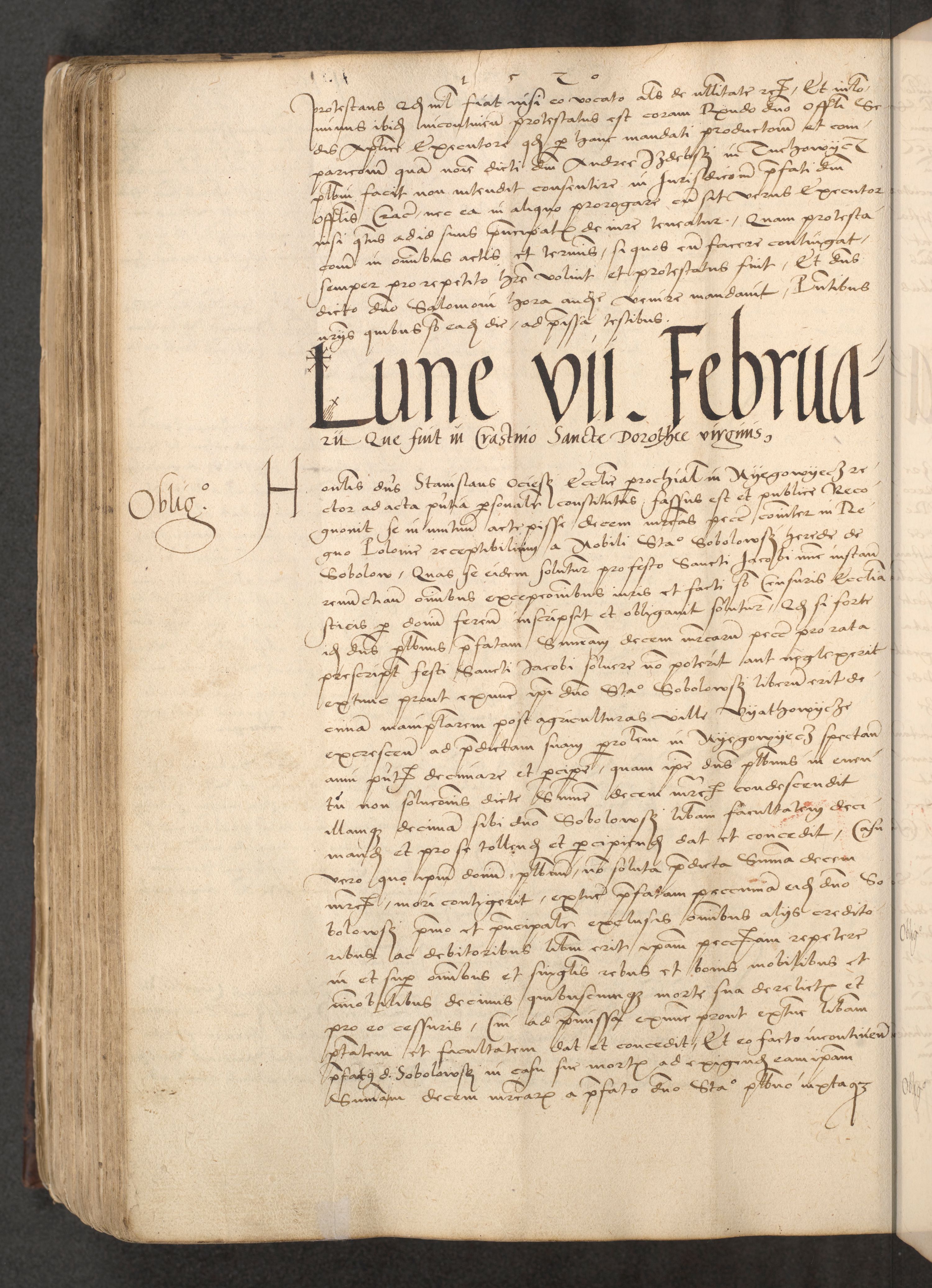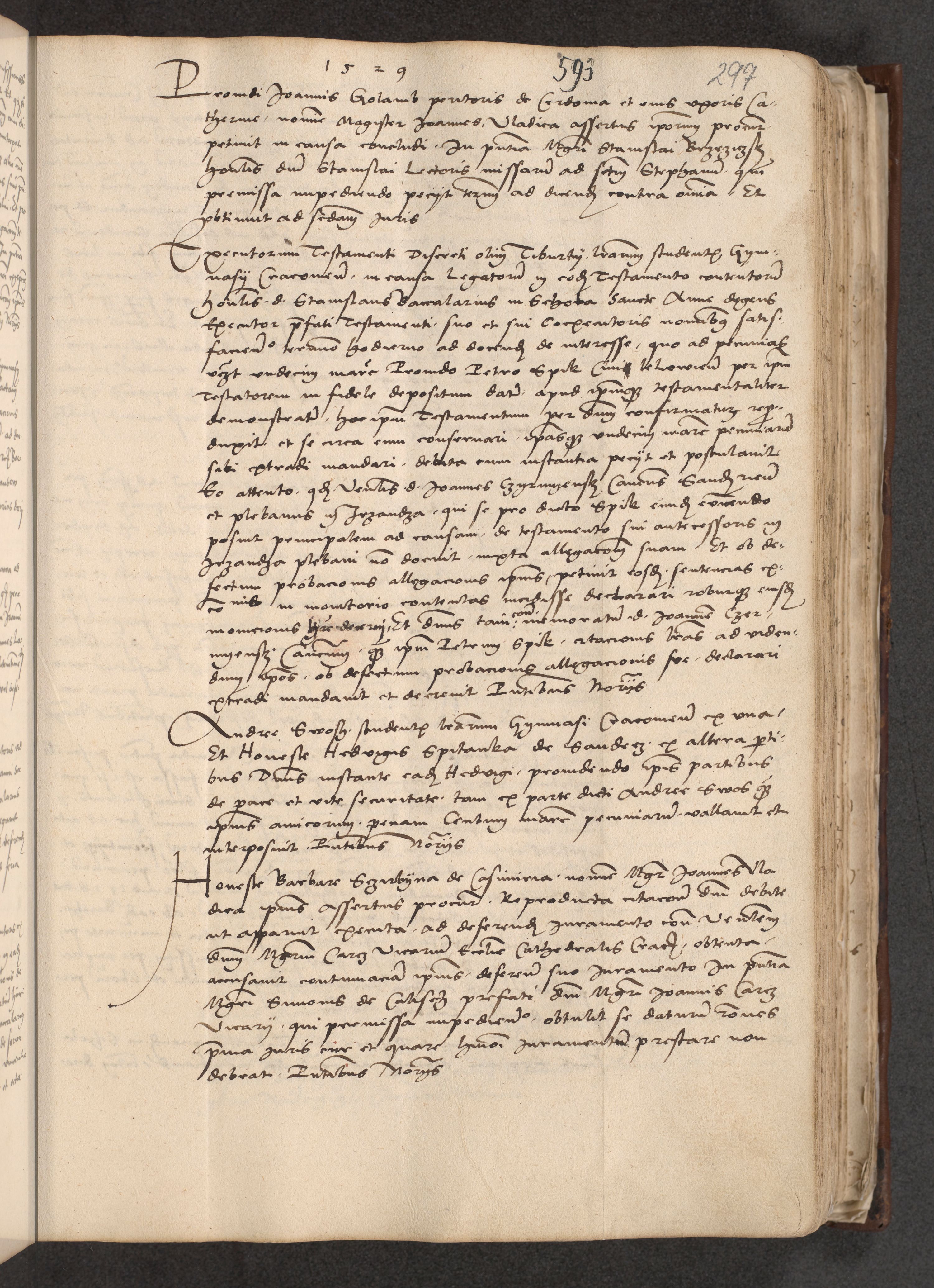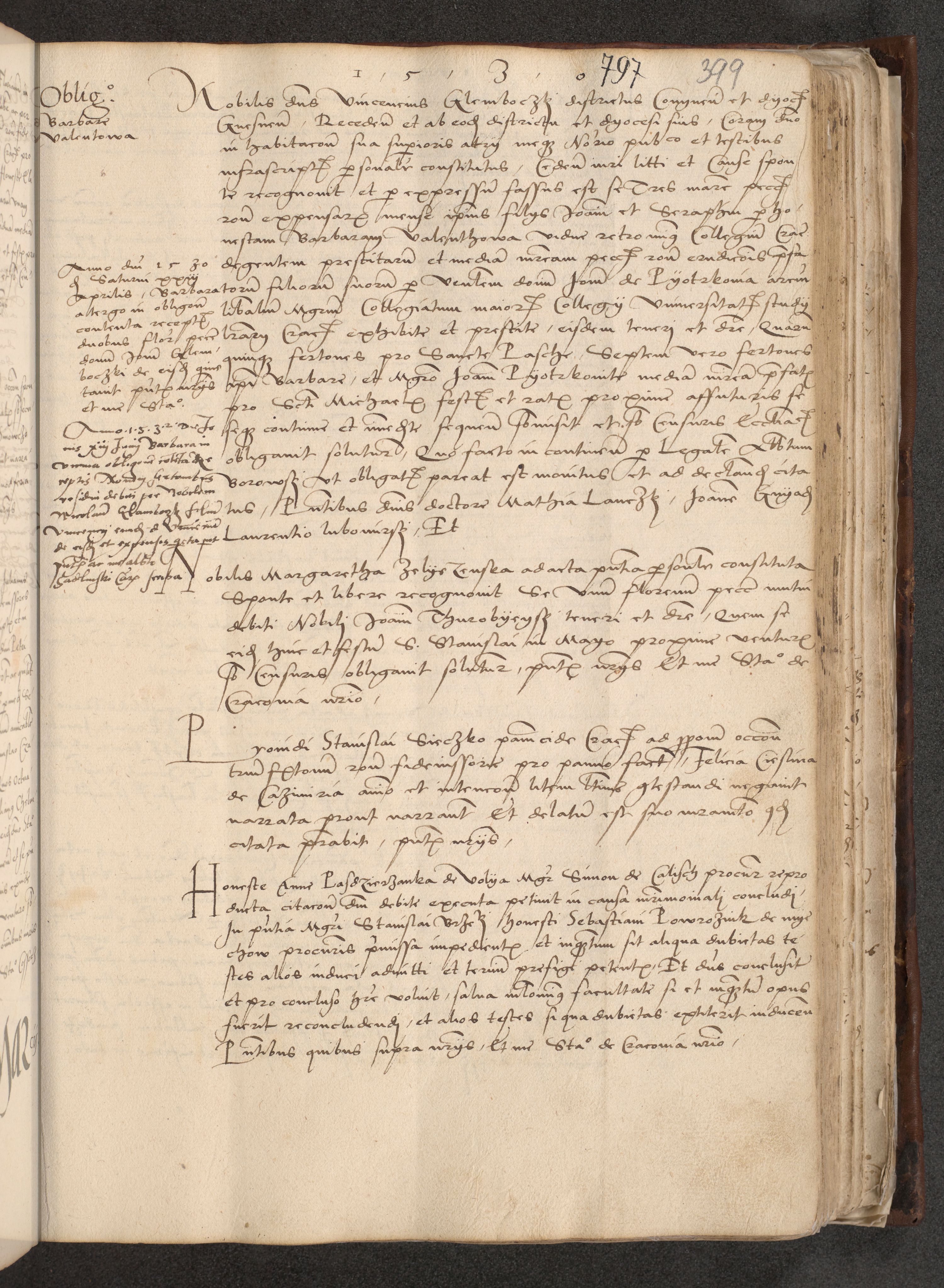 INRI. Acta actorum, obligacionum et sentenciarum tam interlocutoriarum quam diffinitivarum coram reverendo patre ac egregio viro domino Jacobo Erciss[o]wski decretorum doctorem, canonico et officiali generali Cracoviensi ad annum Domini 1528, indicionem primam, pontificatus sanctissimi in Christo patris et domini domini Clementis divina probidendcia pape seprtimi, annum quintum, per Stanislaum de Mordi legalem consistorii notarium omine felici inchoantur