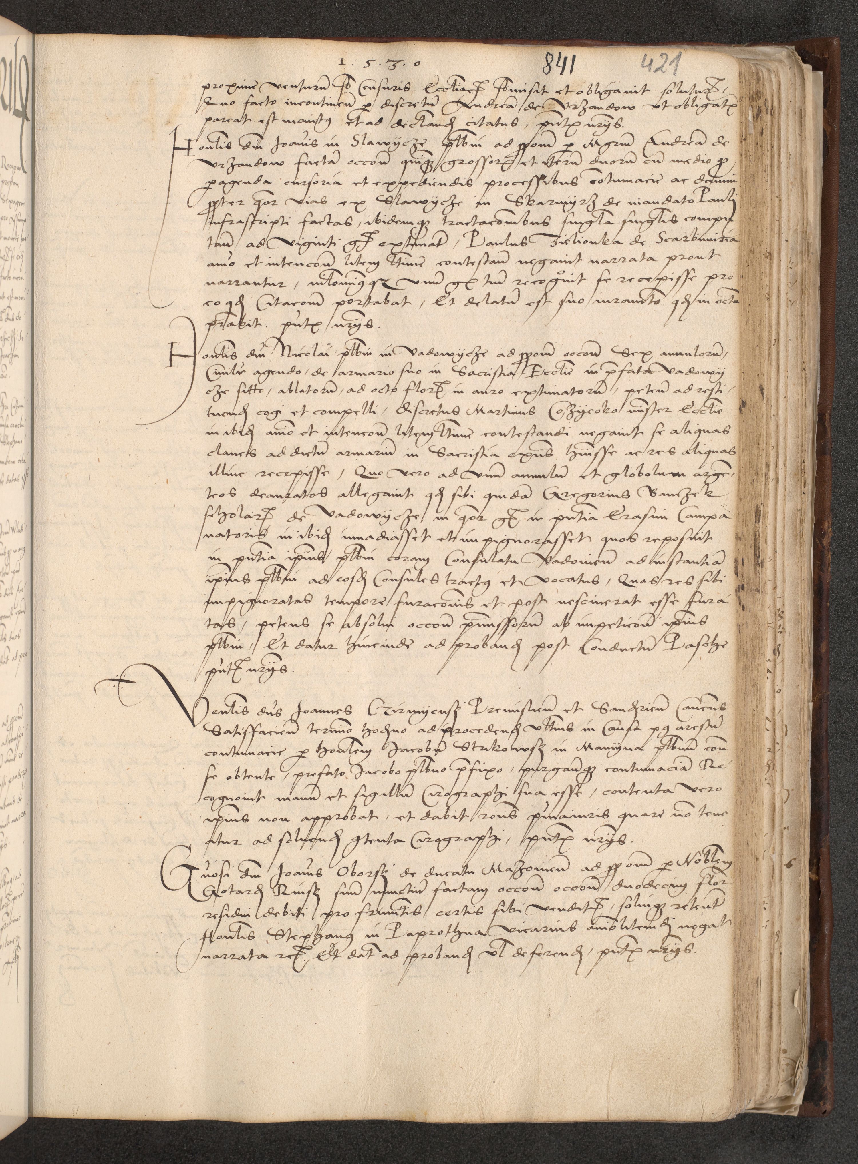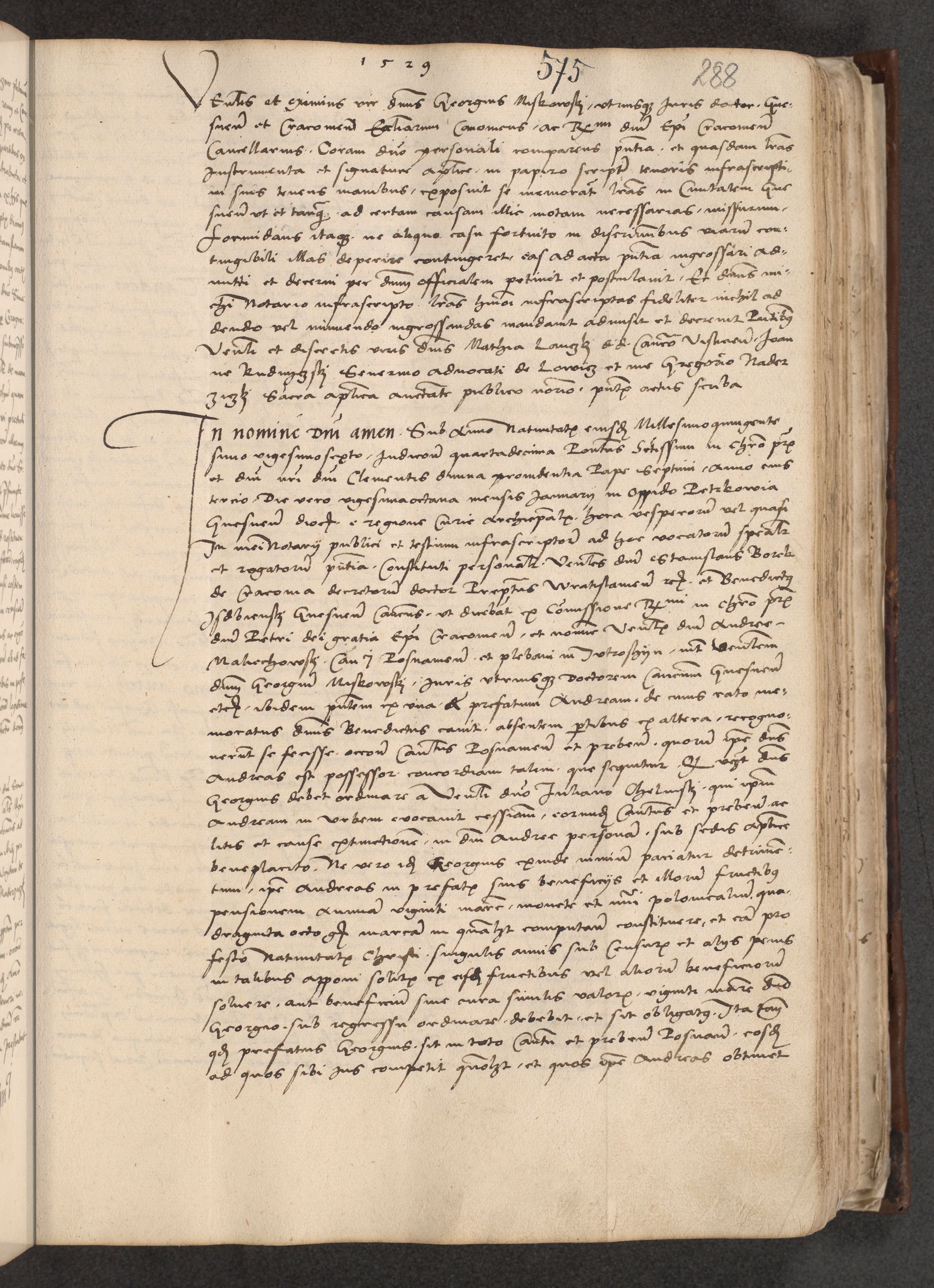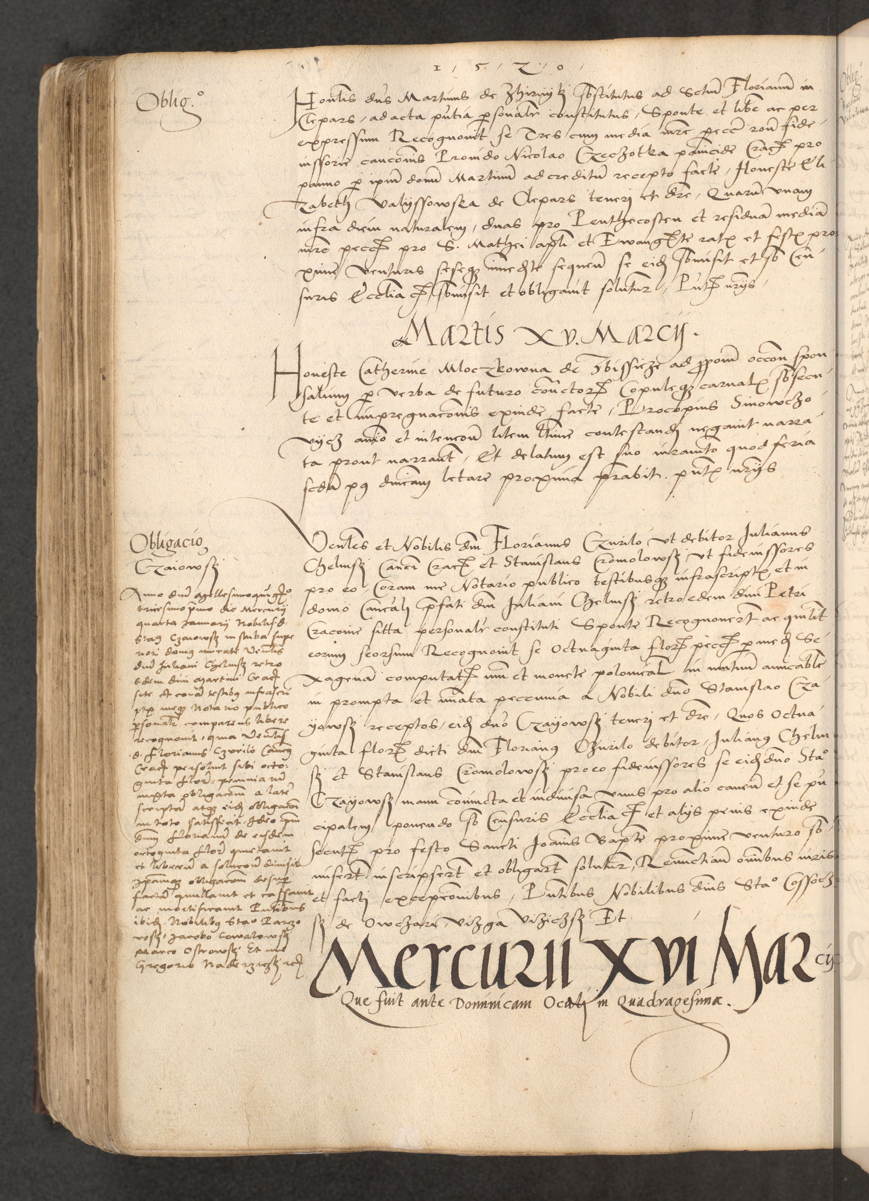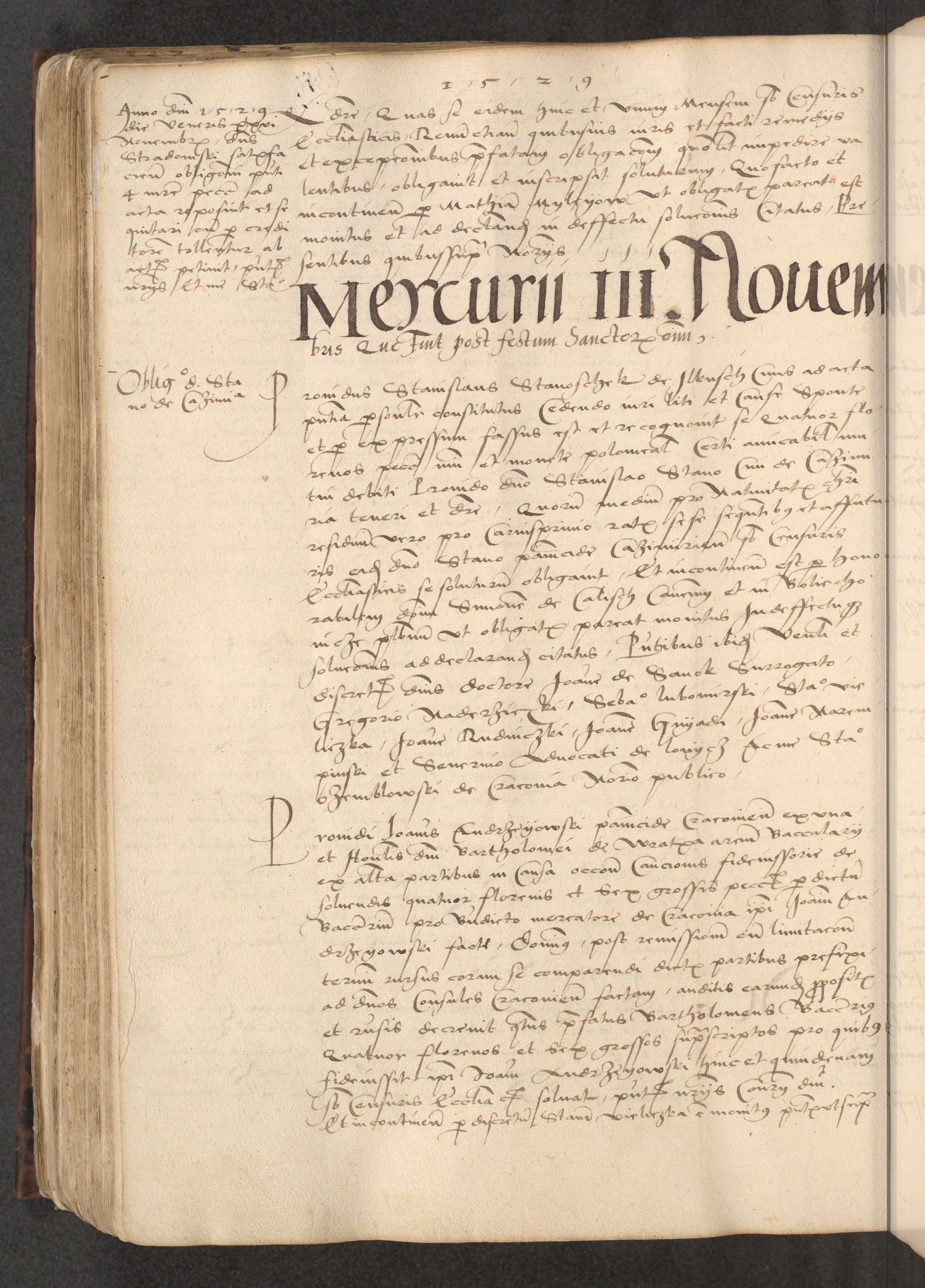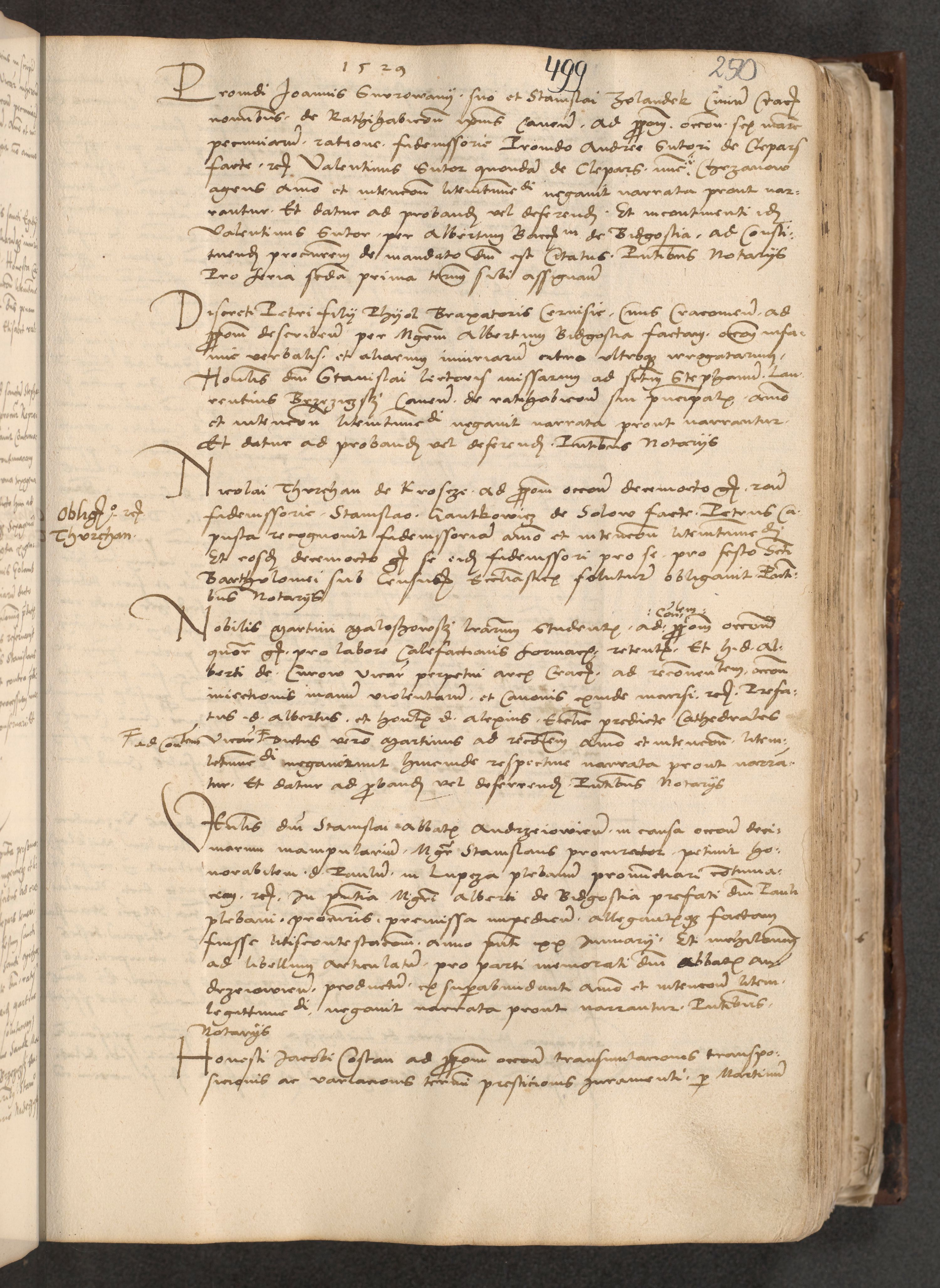 INRI. Acta actorum, obligacionum et sentenciarum tam interlocutoriarum quam diffinitivarum coram reverendo patre ac egregio viro domino Jacobo Erciss[o]wski decretorum doctorem, canonico et officiali generali Cracoviensi ad annum Domini 1528, indicionem primam, pontificatus sanctissimi in Christo patris et domini domini Clementis divina probidendcia pape seprtimi, annum quintum, per Stanislaum de Mordi legalem consistorii notarium omine felici inchoantur