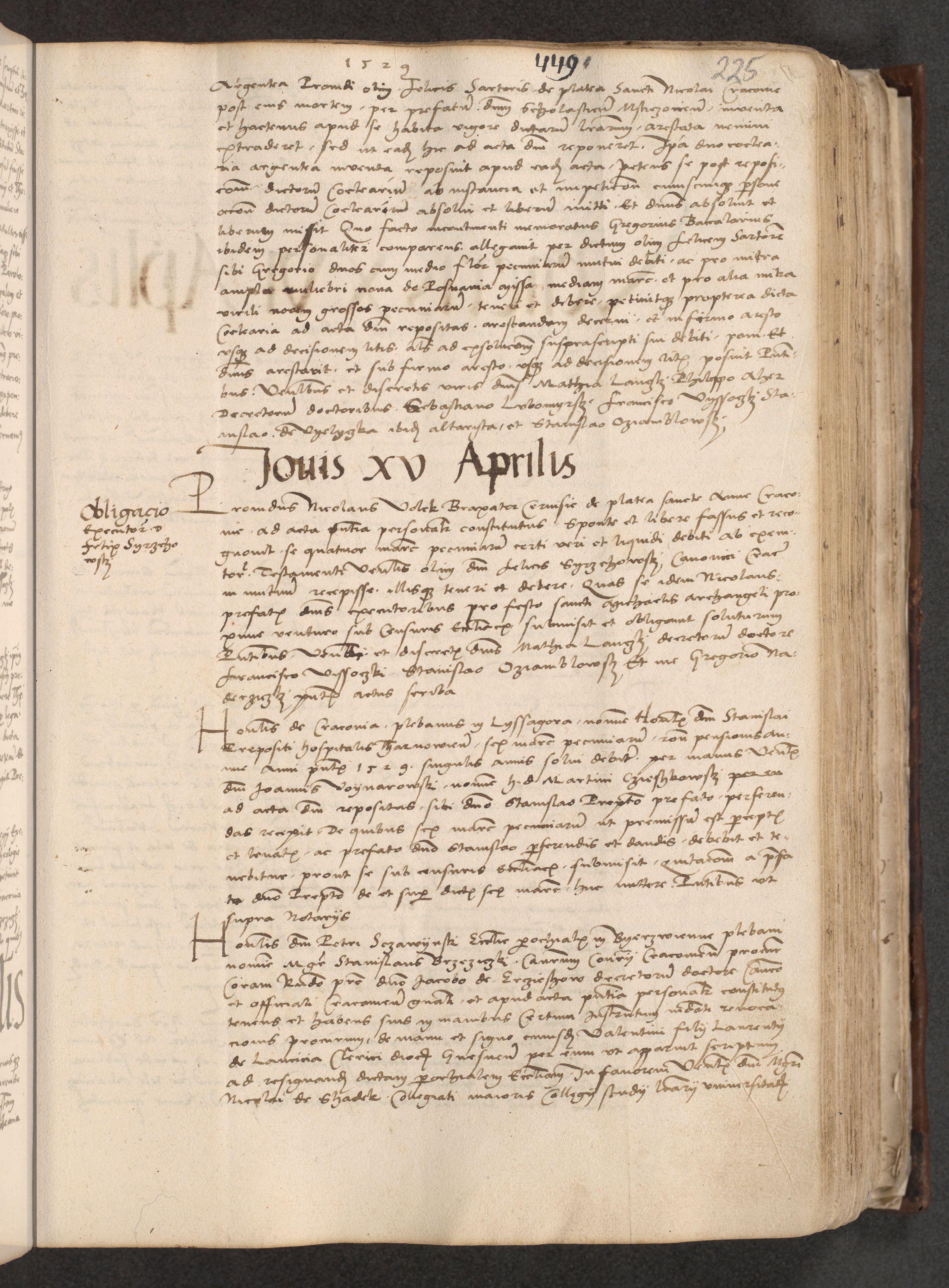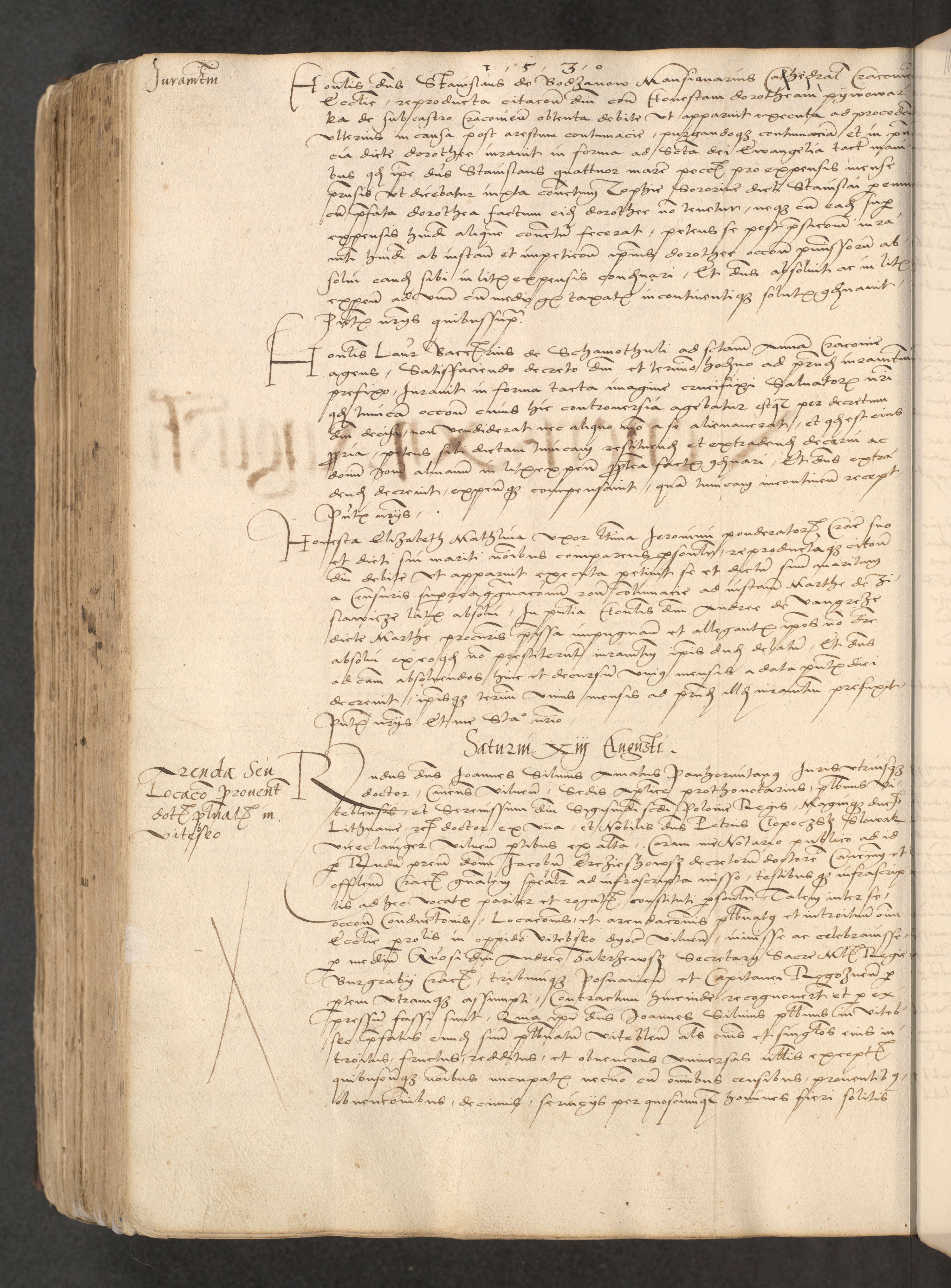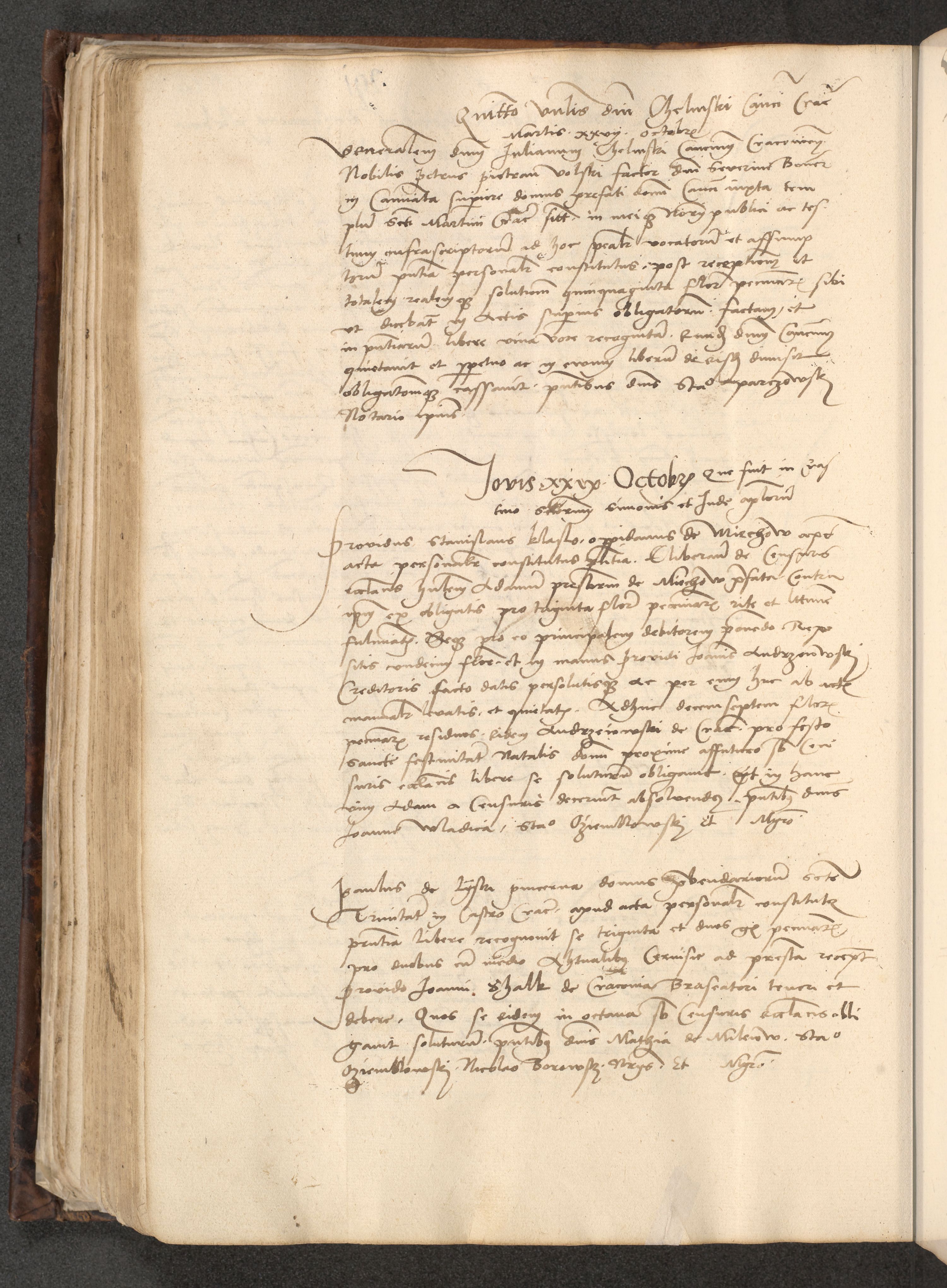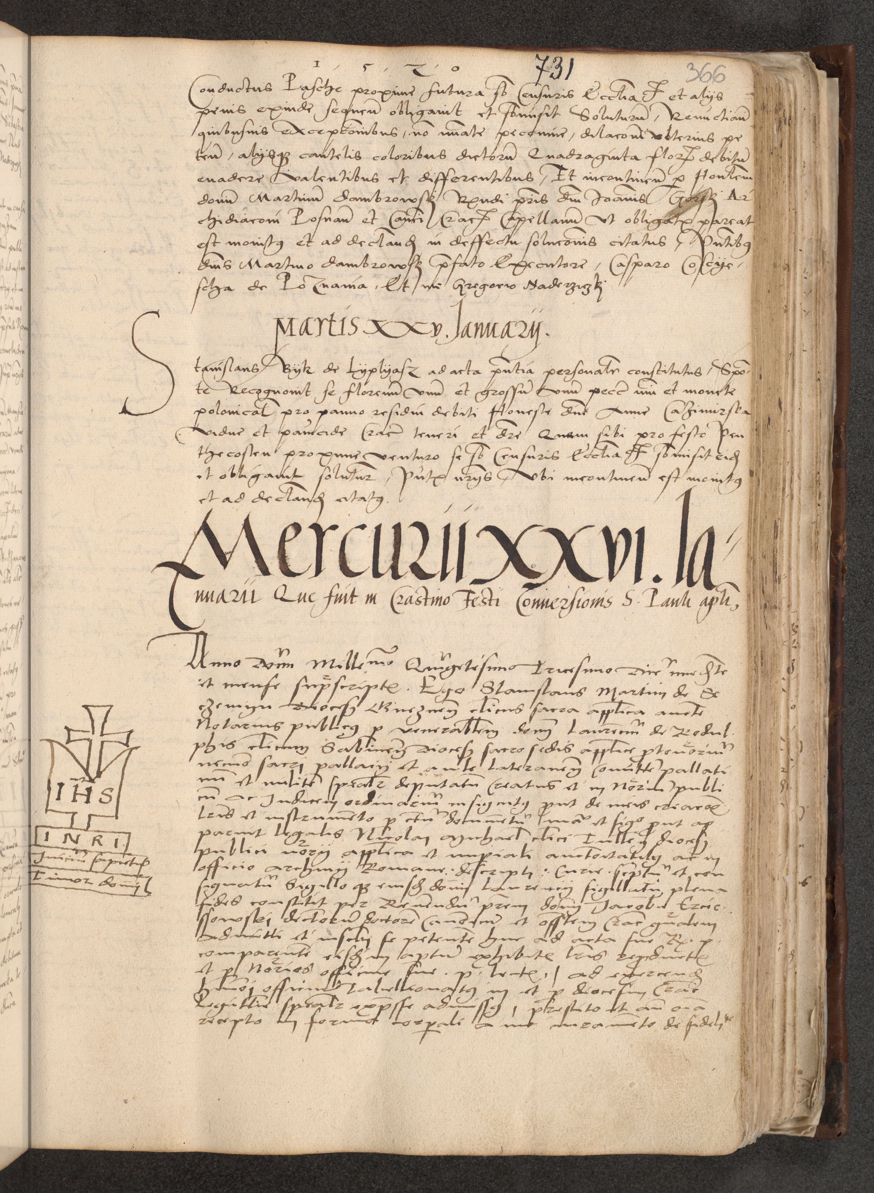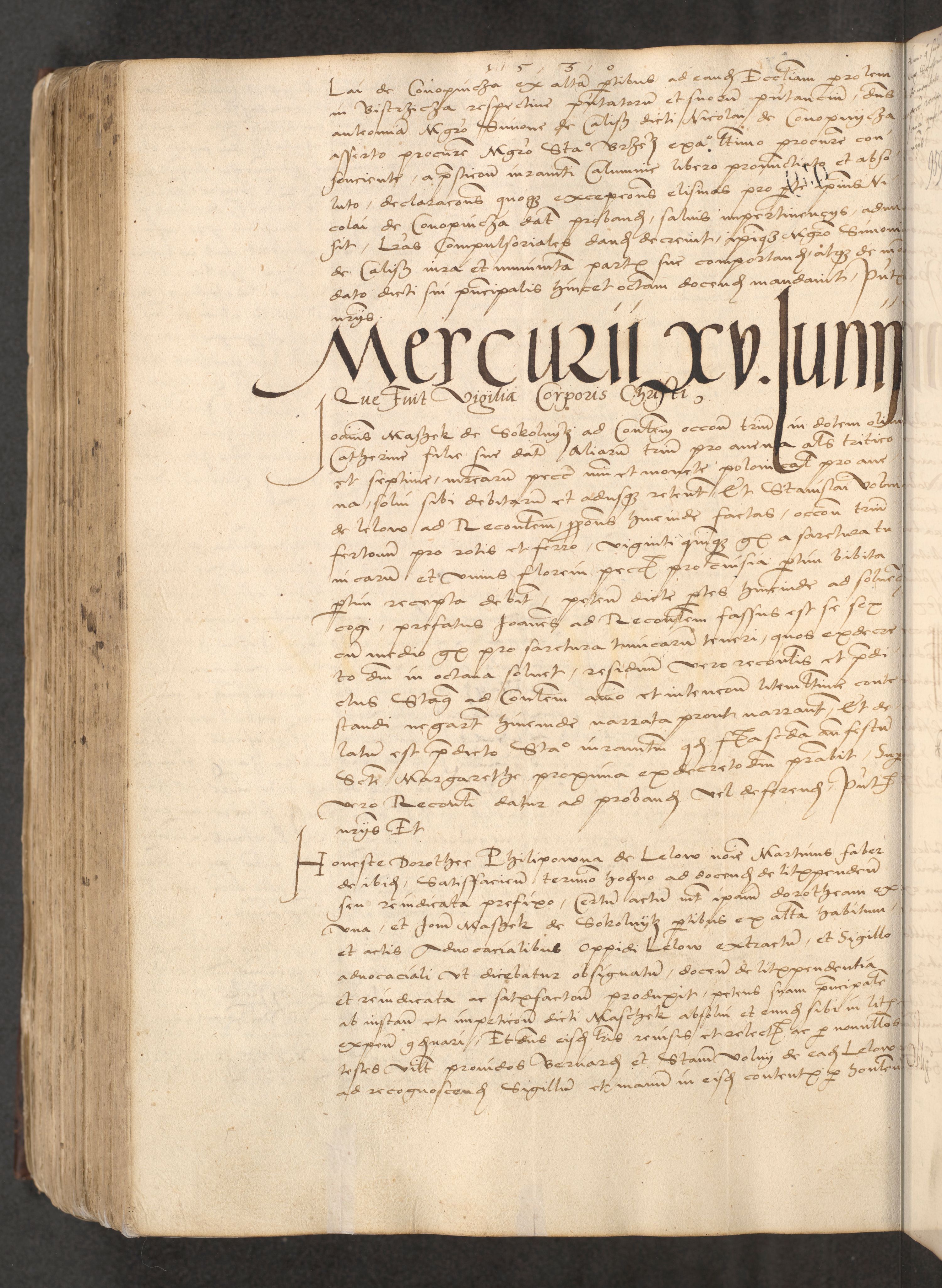 INRI. Acta actorum, obligacionum et sentenciarum tam interlocutoriarum quam diffinitivarum coram reverendo patre ac egregio viro domino Jacobo Erciss[o]wski decretorum doctorem, canonico et officiali generali Cracoviensi ad annum Domini 1528, indicionem primam, pontificatus sanctissimi in Christo patris et domini domini Clementis divina probidendcia pape seprtimi, annum quintum, per Stanislaum de Mordi legalem consistorii notarium omine felici inchoantur