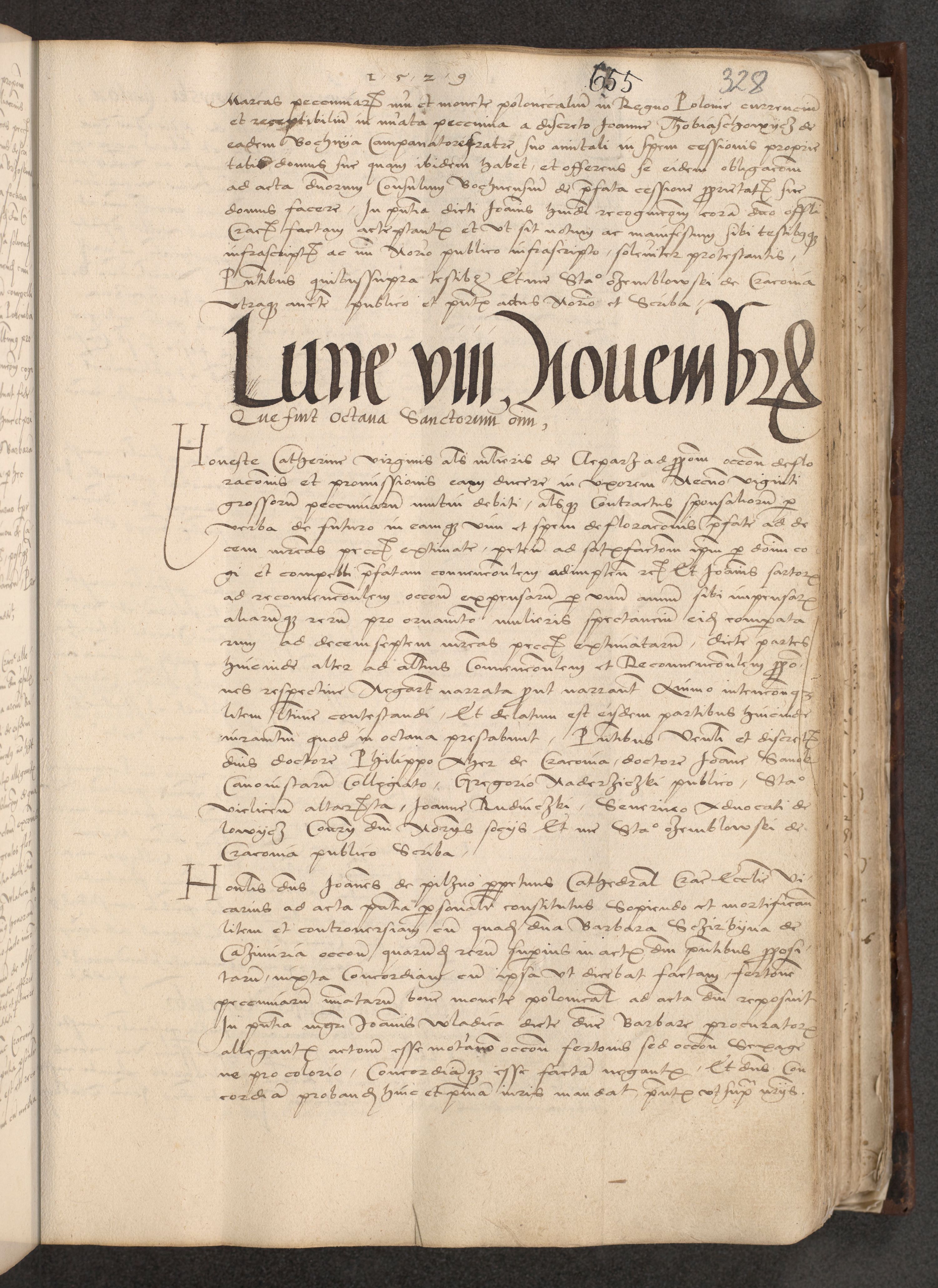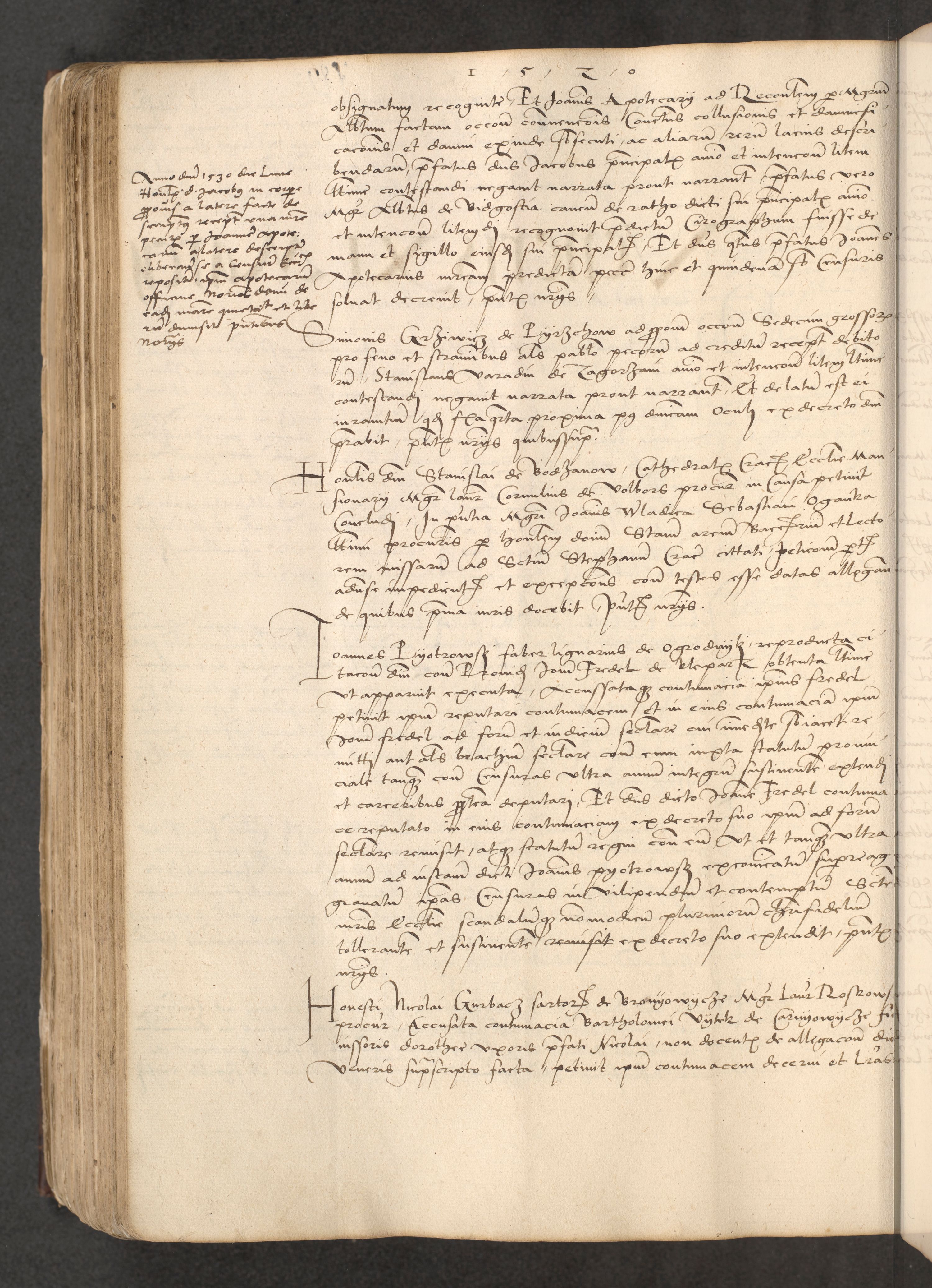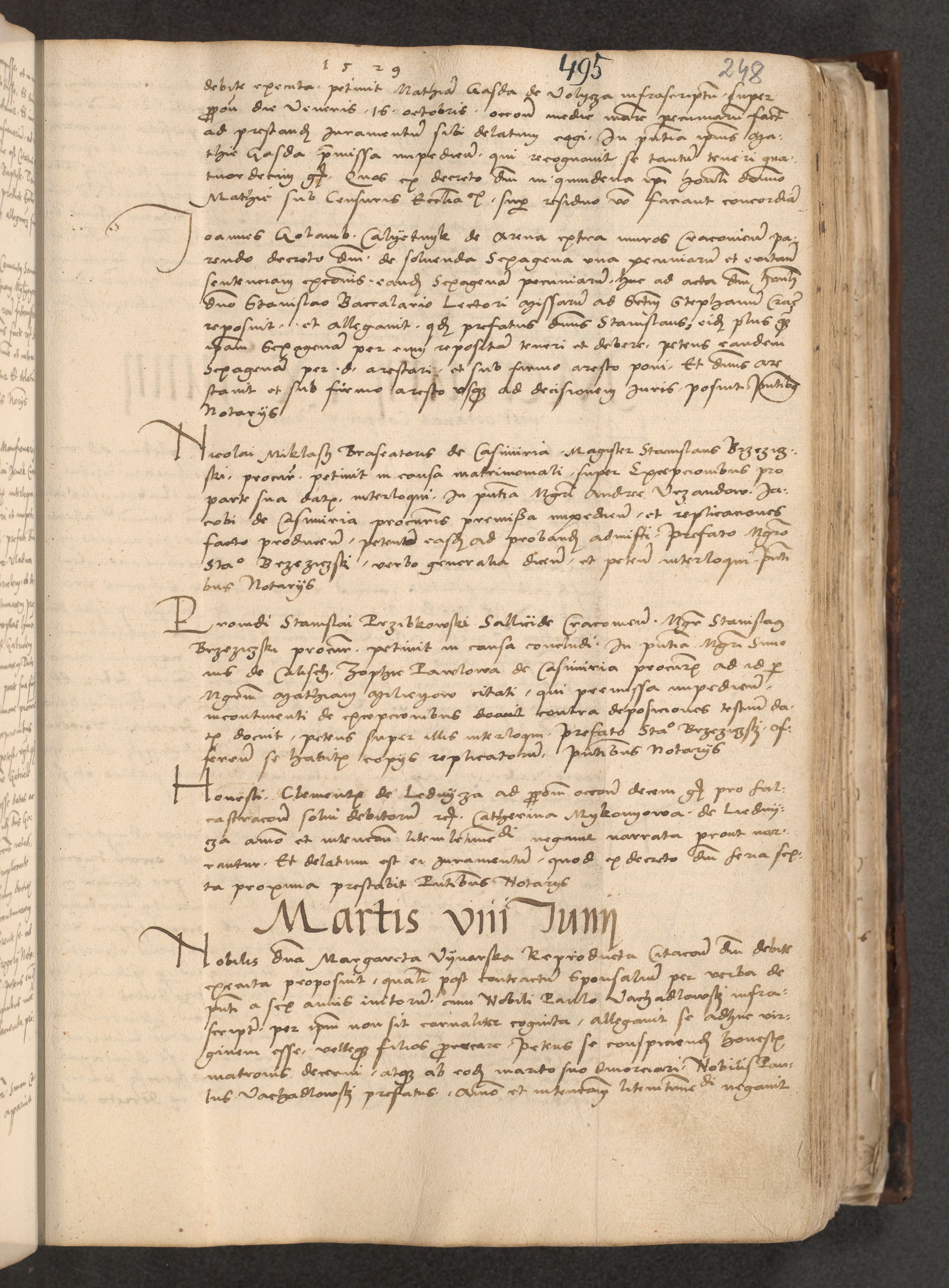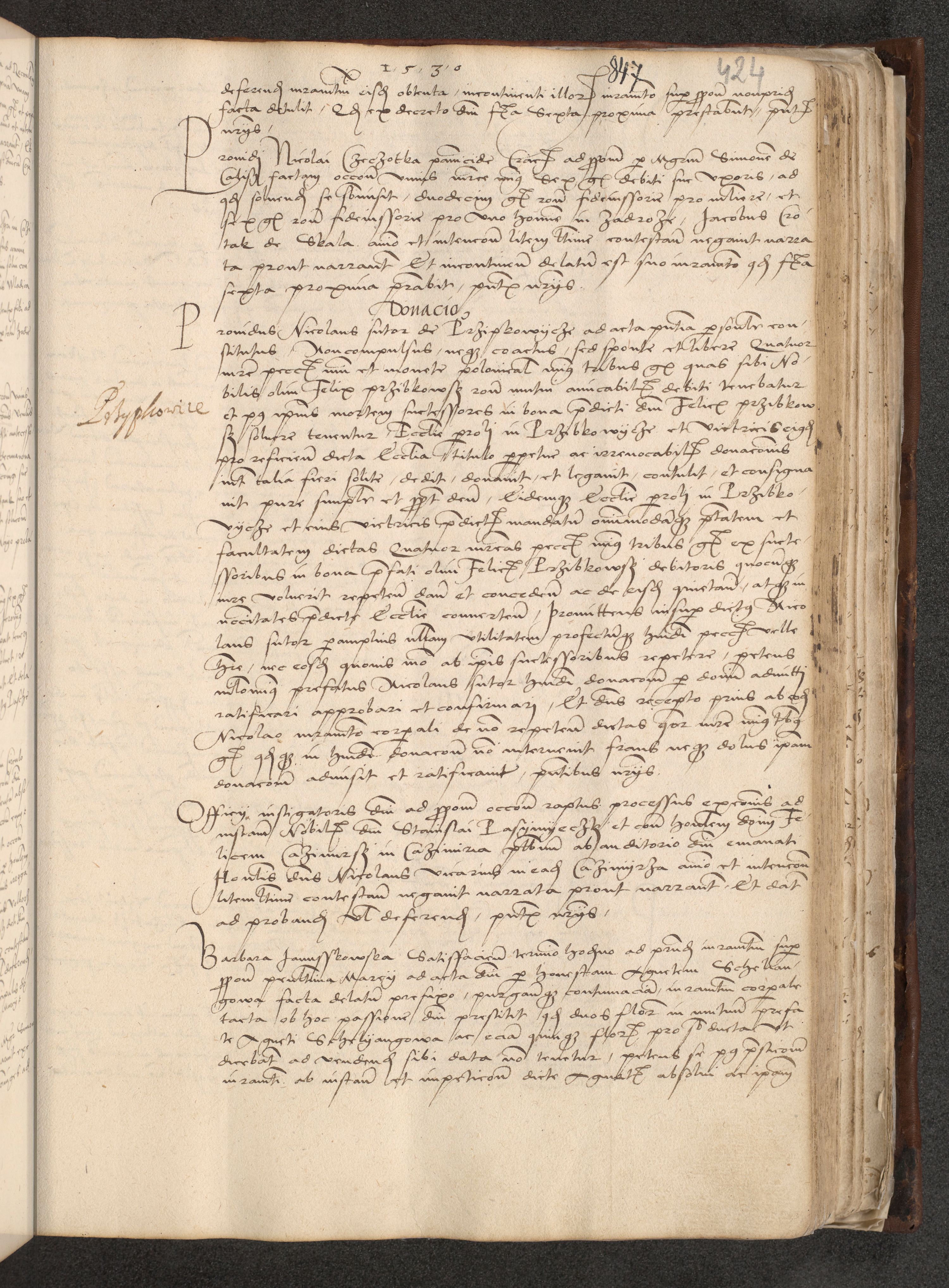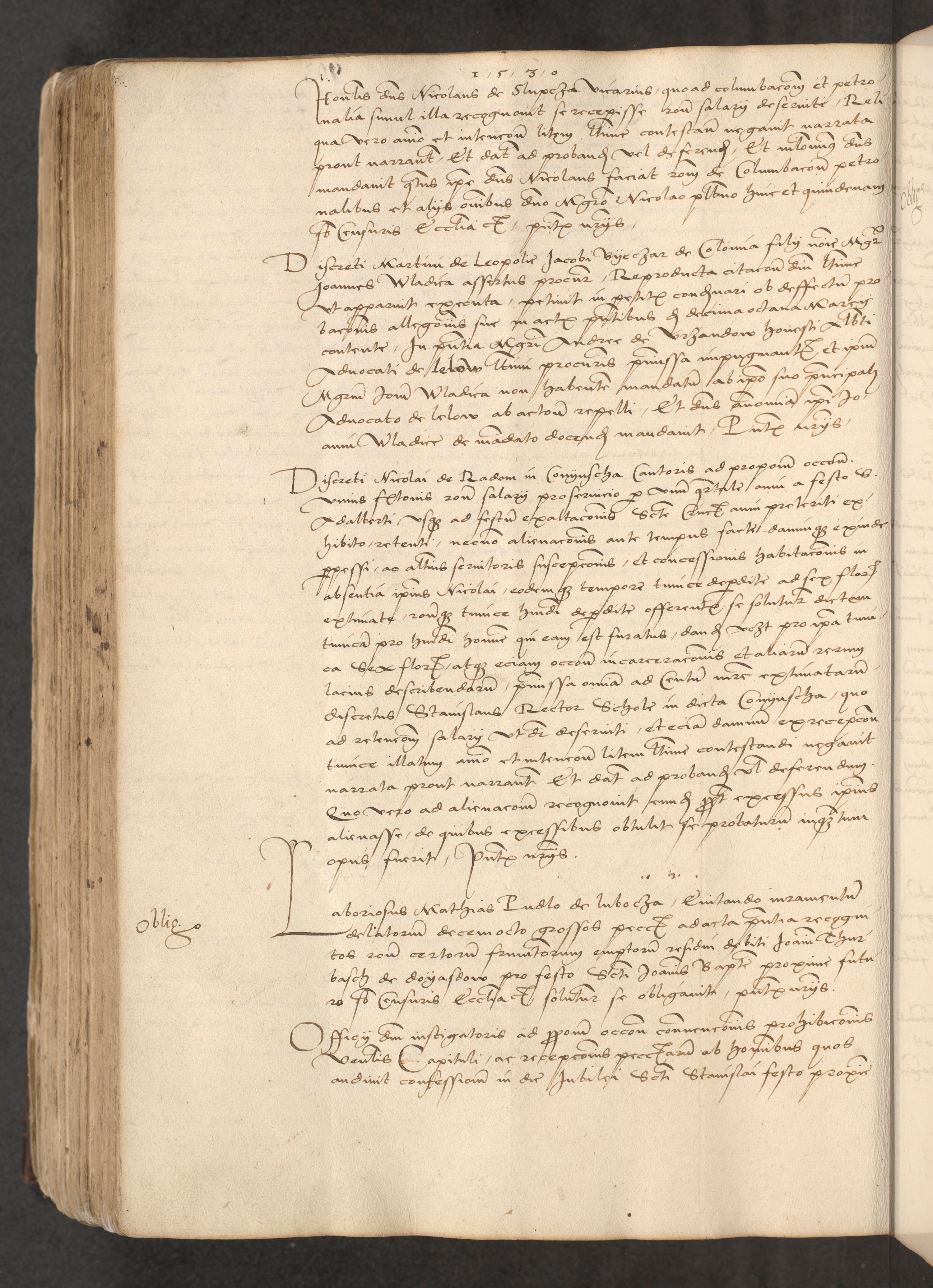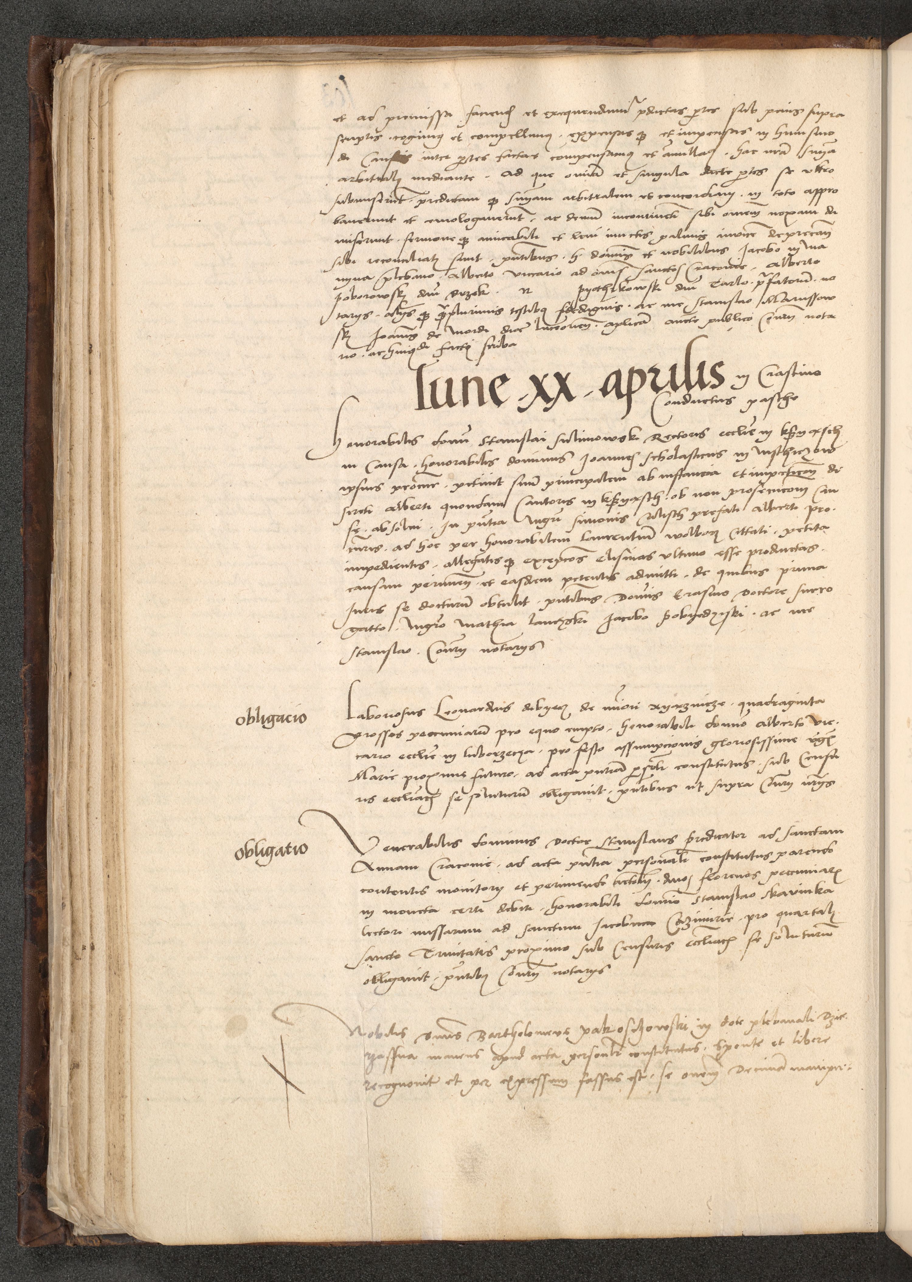 INRI. Acta actorum, obligacionum et sentenciarum tam interlocutoriarum quam diffinitivarum coram reverendo patre ac egregio viro domino Jacobo Erciss[o]wski decretorum doctorem, canonico et officiali generali Cracoviensi ad annum Domini 1528, indicionem primam, pontificatus sanctissimi in Christo patris et domini domini Clementis divina probidendcia pape seprtimi, annum quintum, per Stanislaum de Mordi legalem consistorii notarium omine felici inchoantur