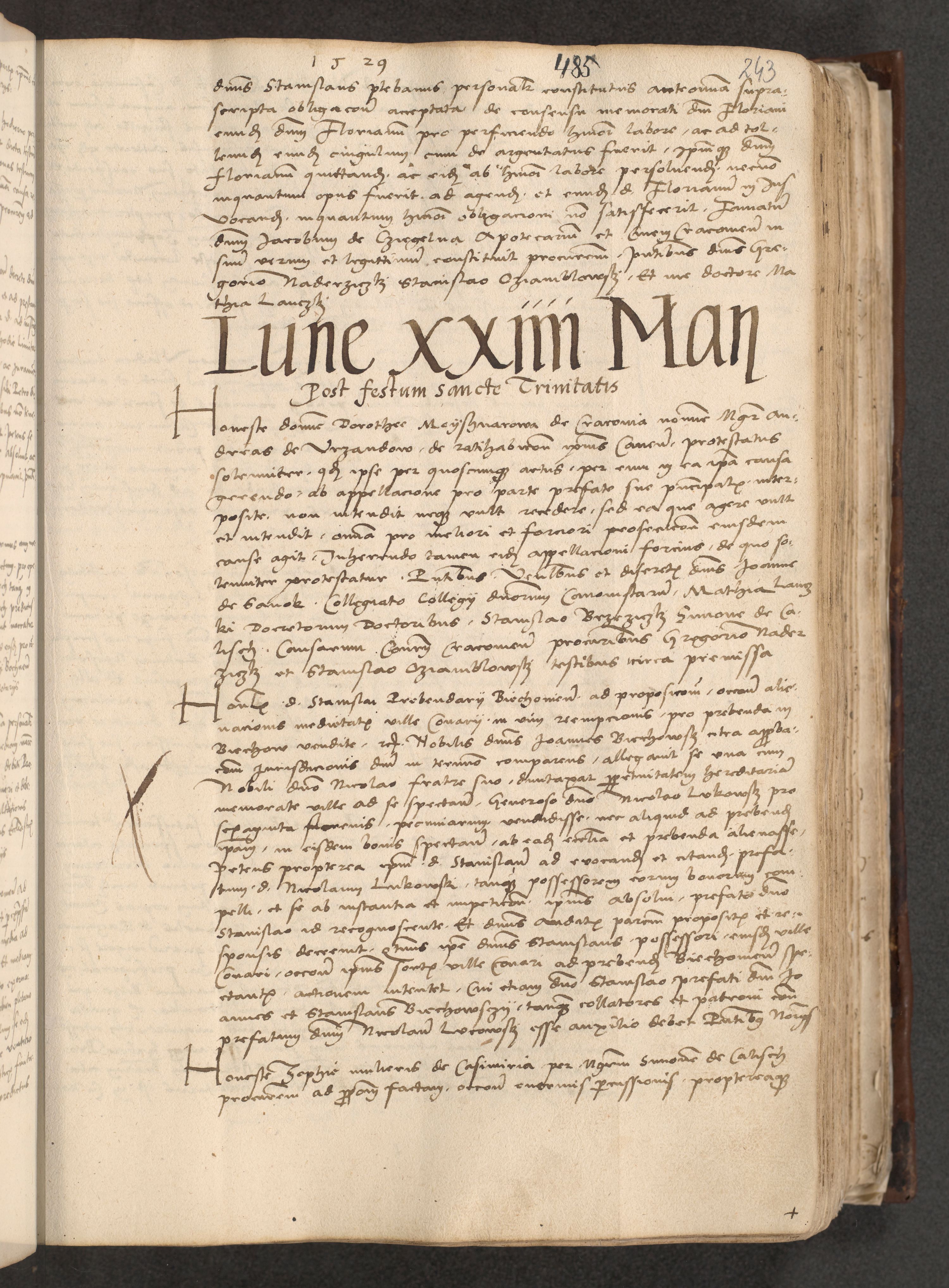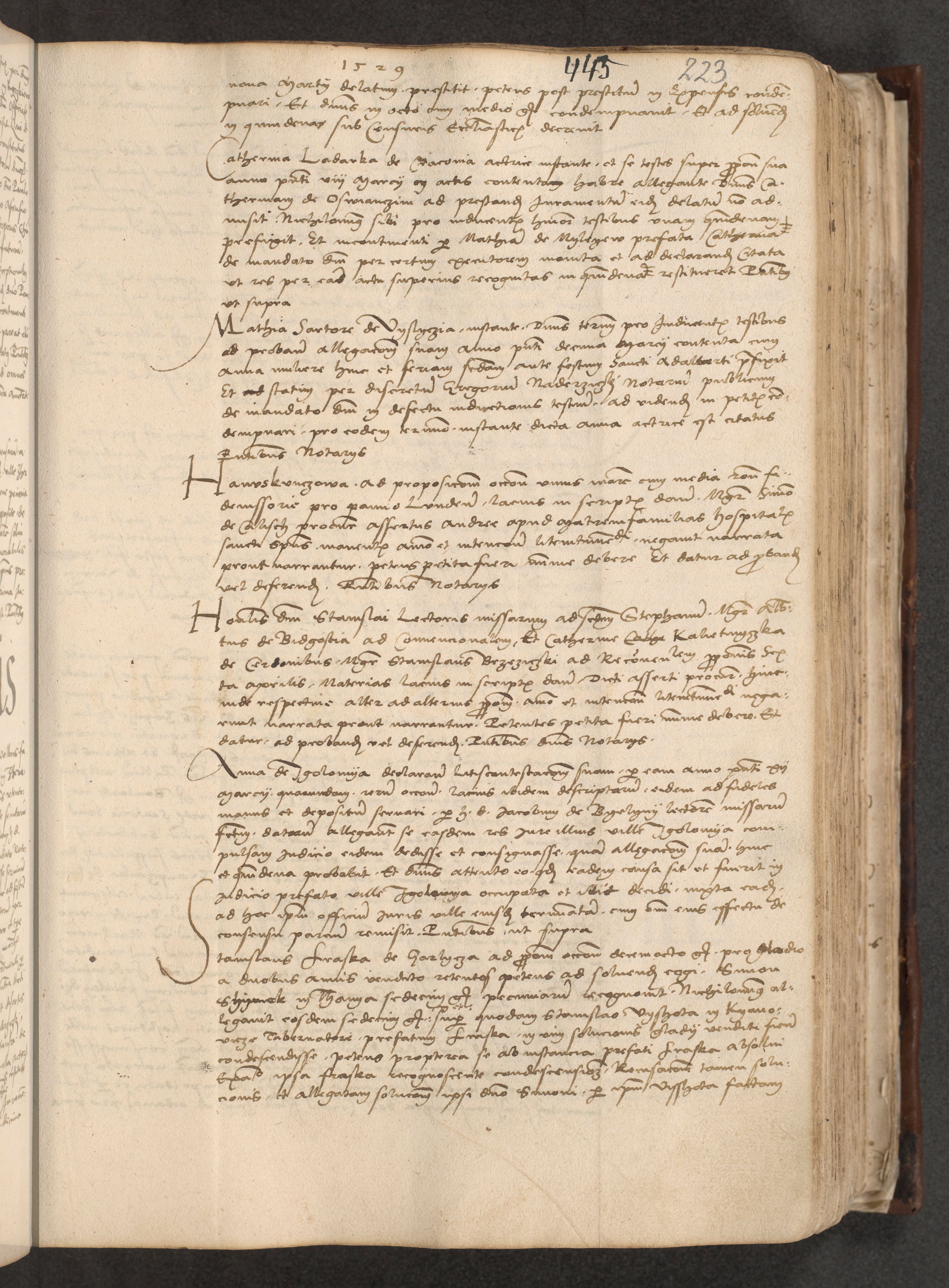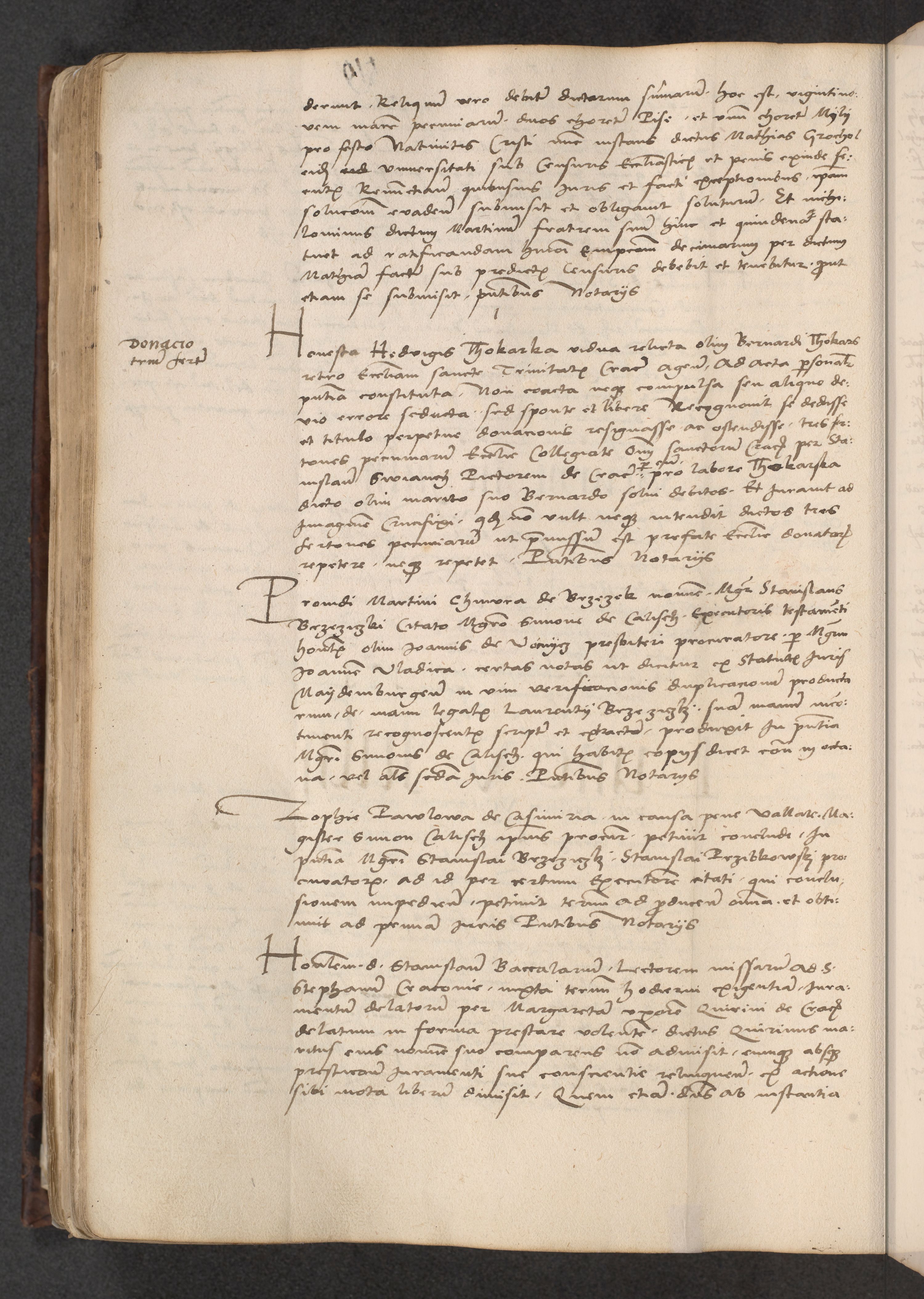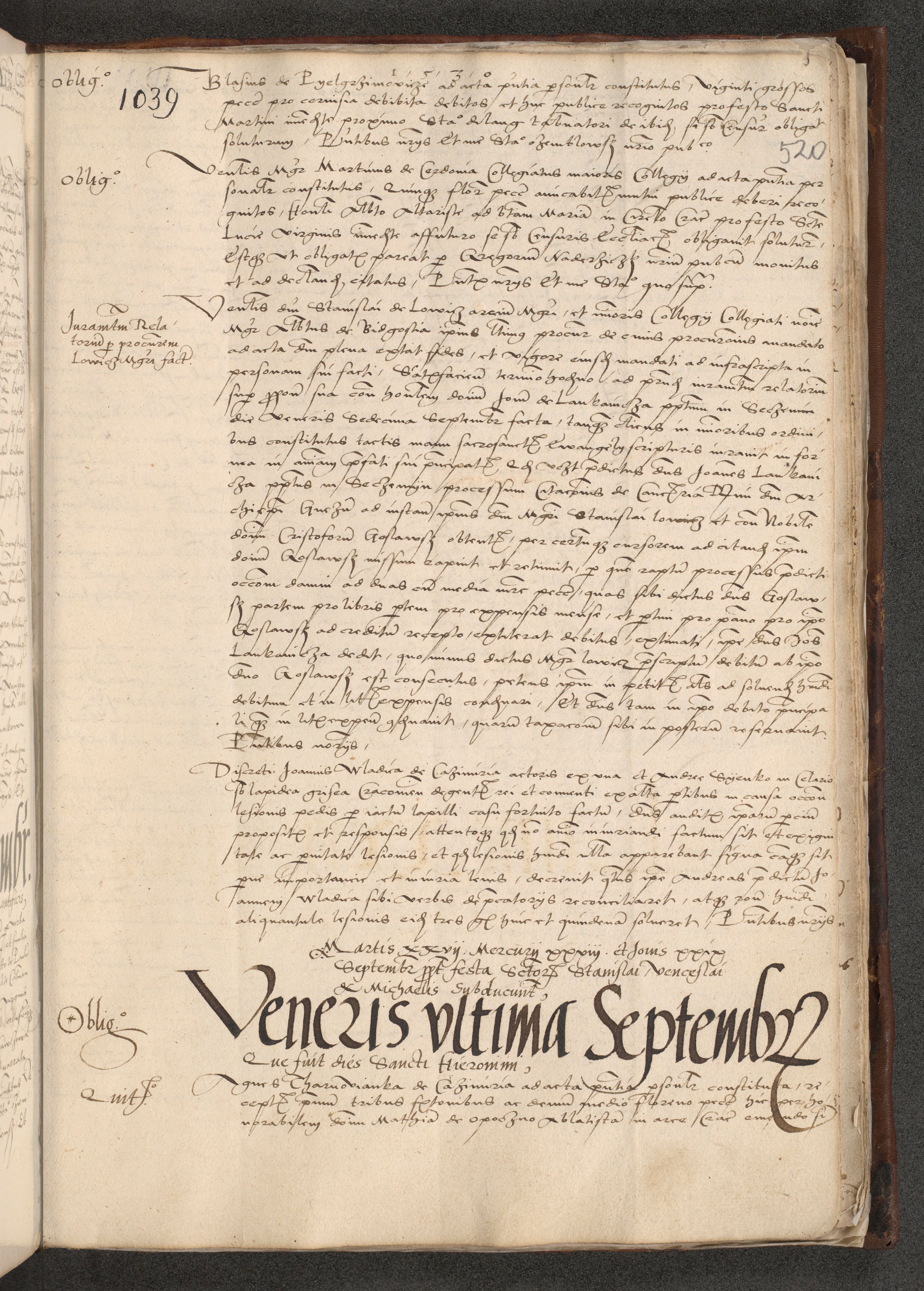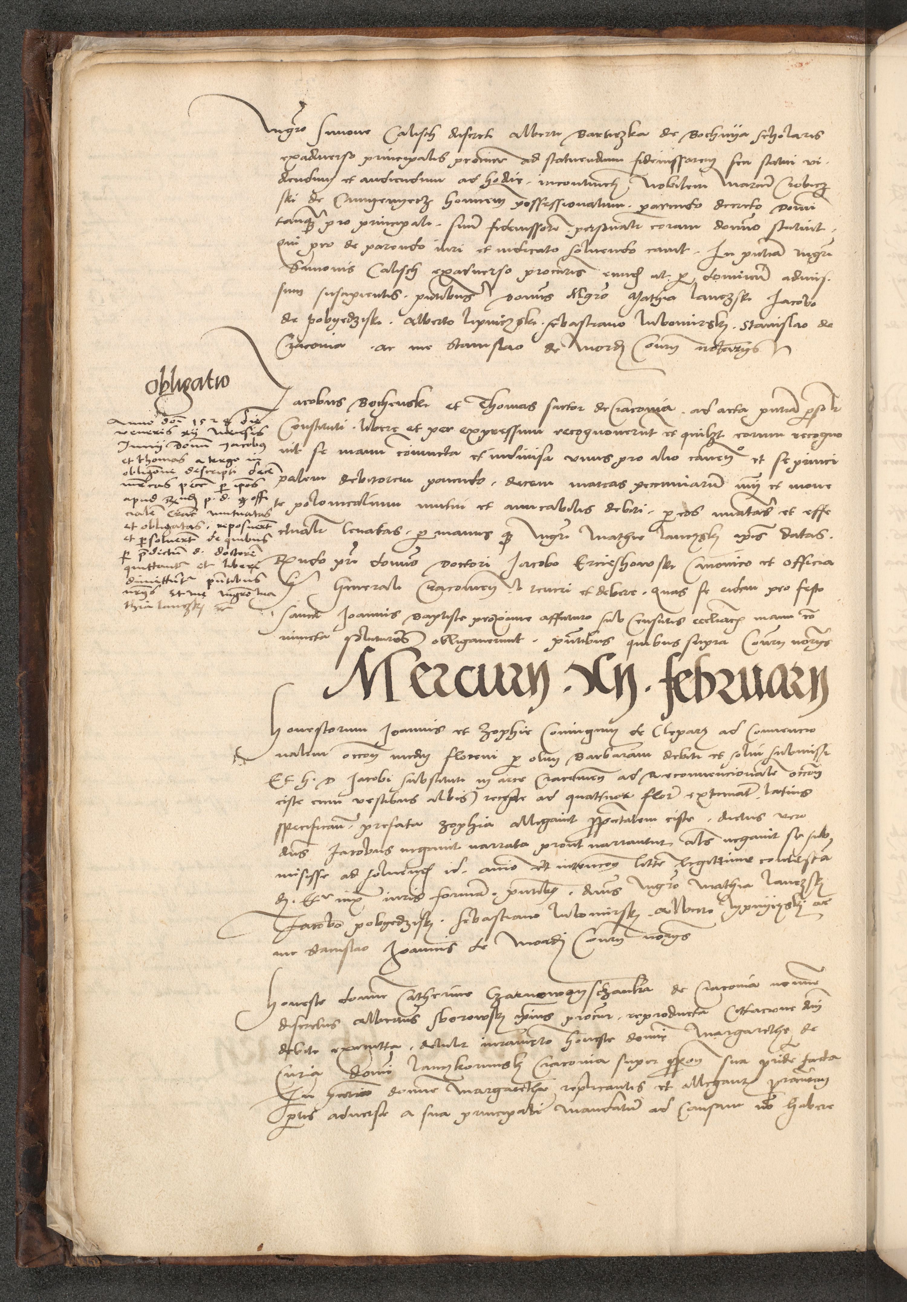 INRI. Acta actorum, obligacionum et sentenciarum tam interlocutoriarum quam diffinitivarum coram reverendo patre ac egregio viro domino Jacobo Erciss[o]wski decretorum doctorem, canonico et officiali generali Cracoviensi ad annum Domini 1528, indicionem primam, pontificatus sanctissimi in Christo patris et domini domini Clementis divina probidendcia pape seprtimi, annum quintum, per Stanislaum de Mordi legalem consistorii notarium omine felici inchoantur