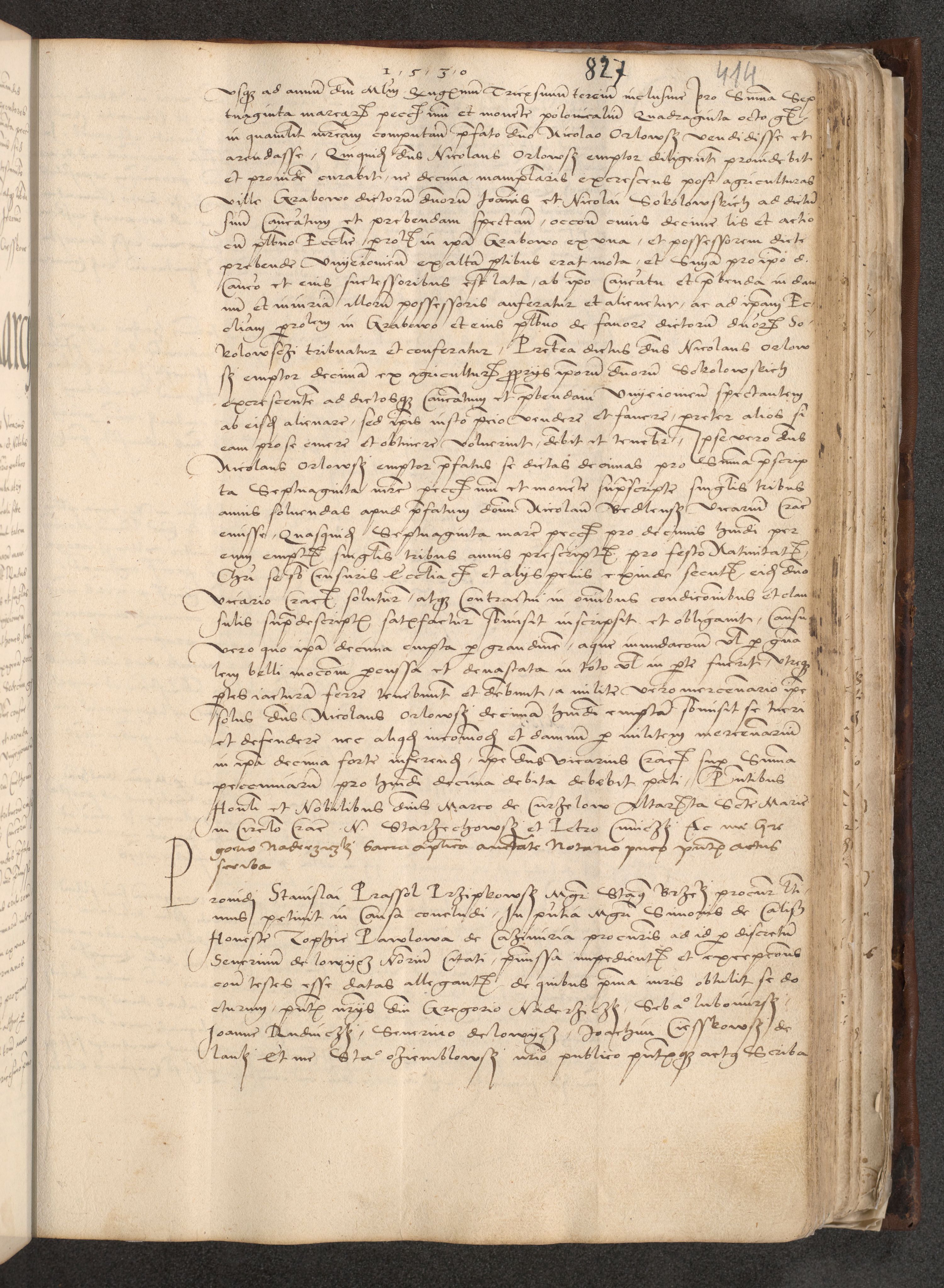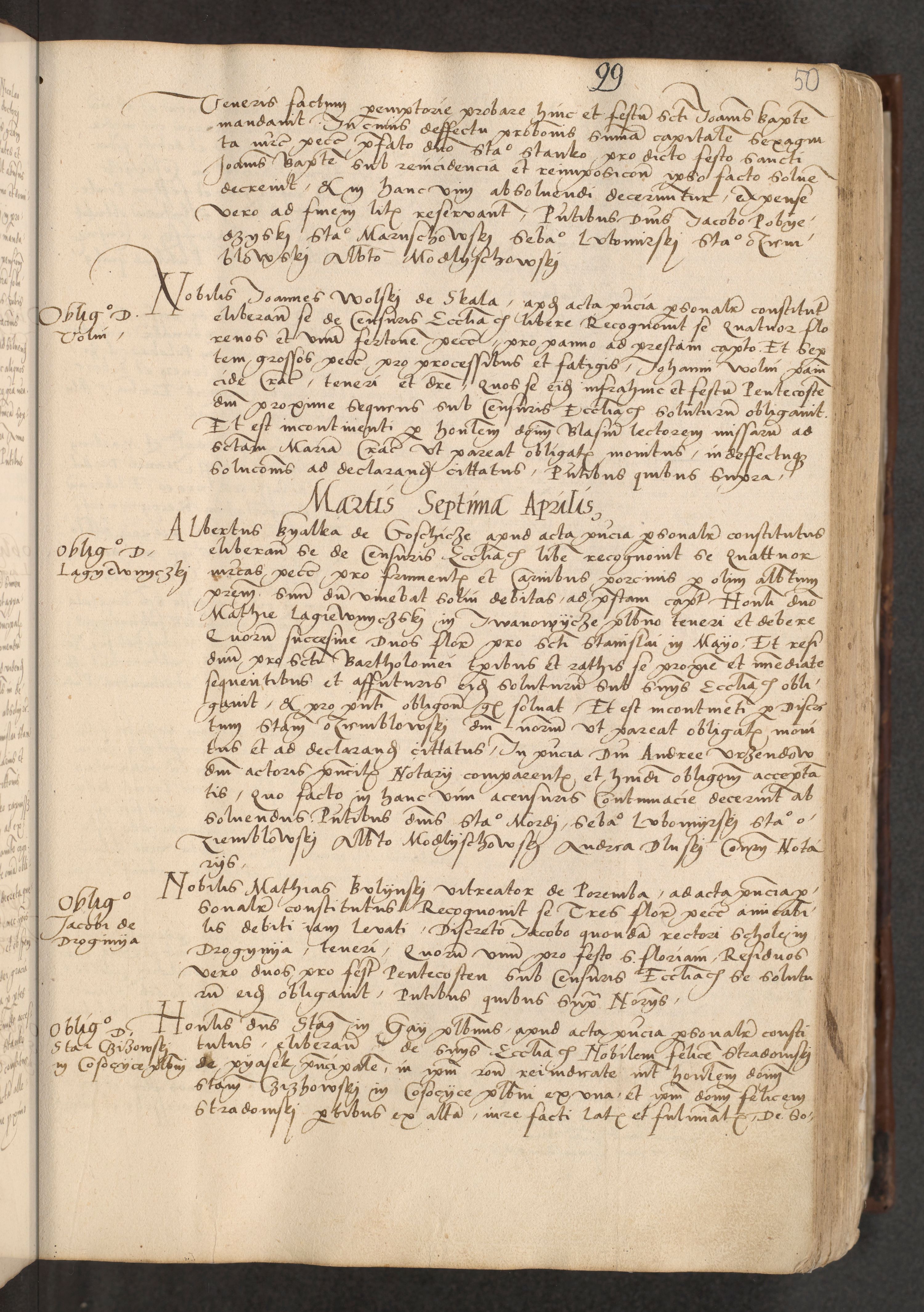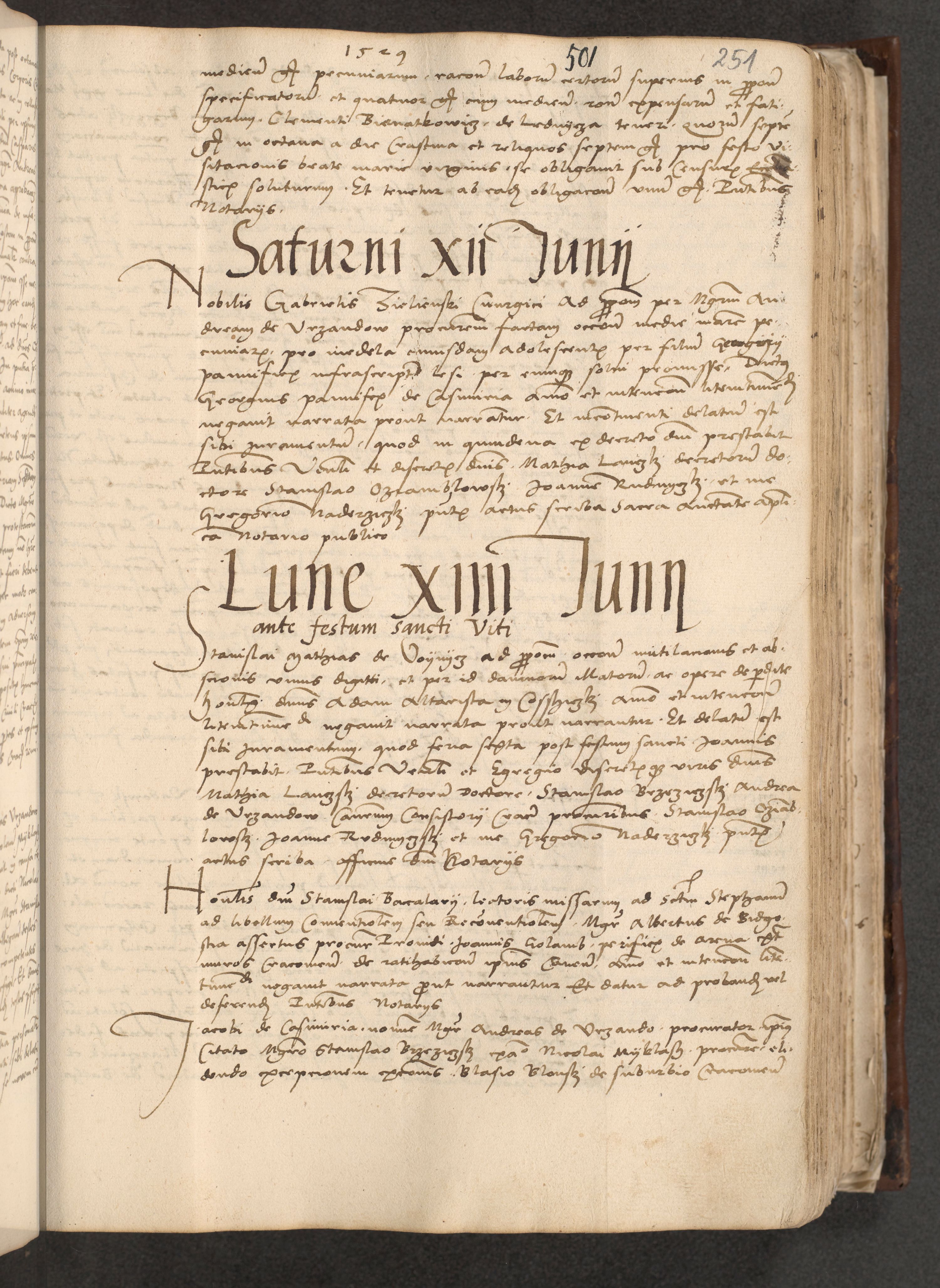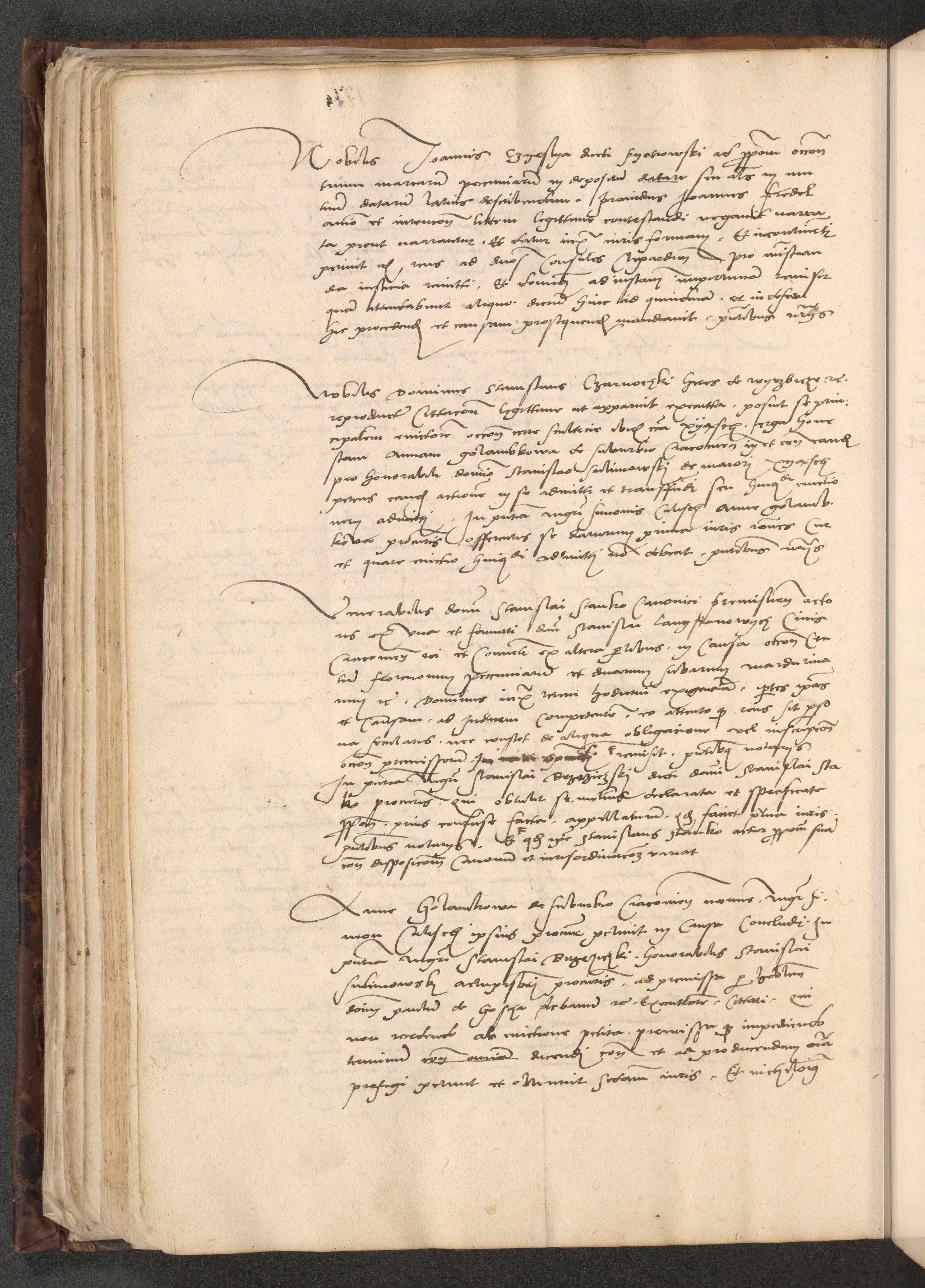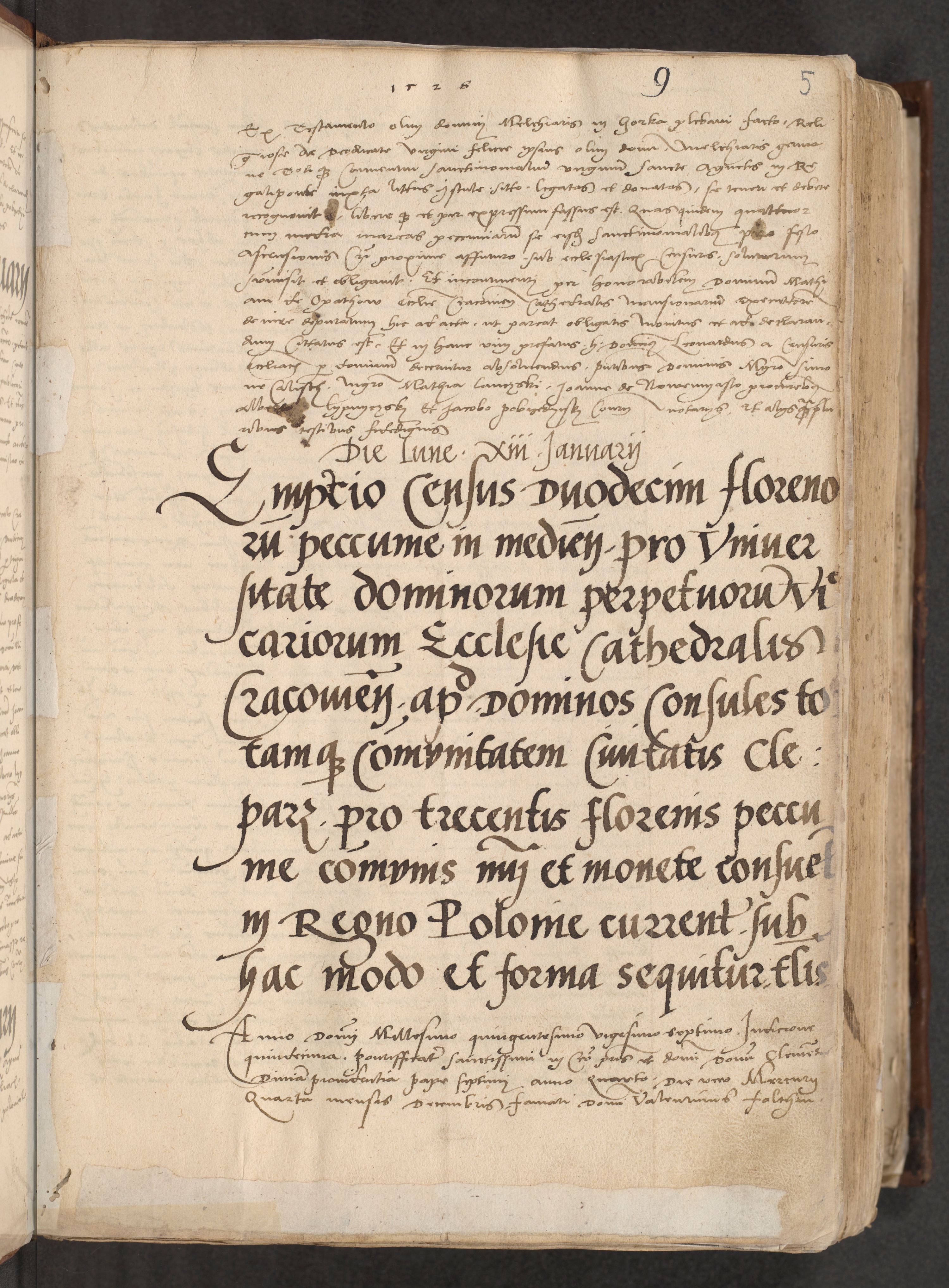 INRI. Acta actorum, obligacionum et sentenciarum tam interlocutoriarum quam diffinitivarum coram reverendo patre ac egregio viro domino Jacobo Erciss[o]wski decretorum doctorem, canonico et officiali generali Cracoviensi ad annum Domini 1528, indicionem primam, pontificatus sanctissimi in Christo patris et domini domini Clementis divina probidendcia pape seprtimi, annum quintum, per Stanislaum de Mordi legalem consistorii notarium omine felici inchoantur