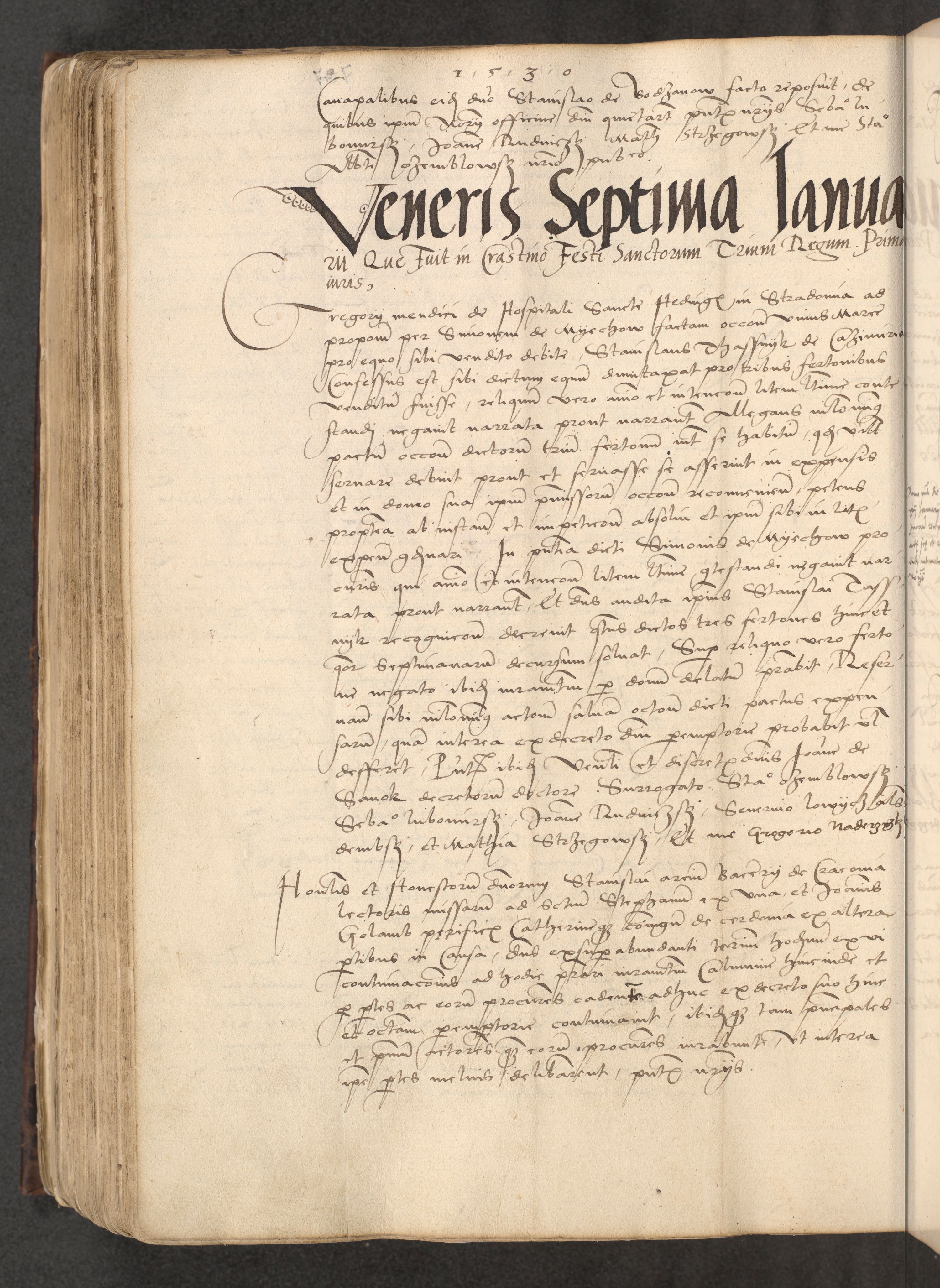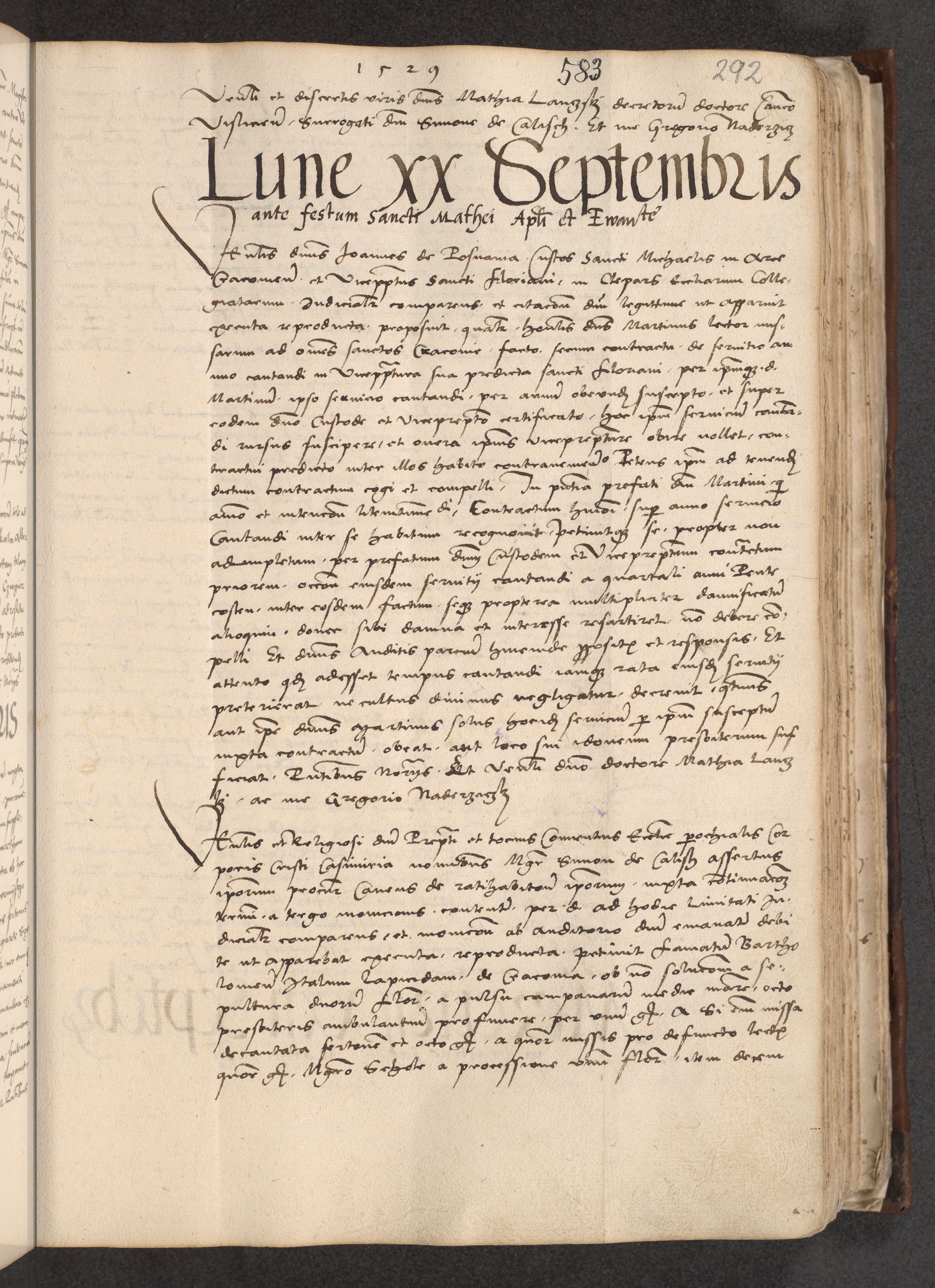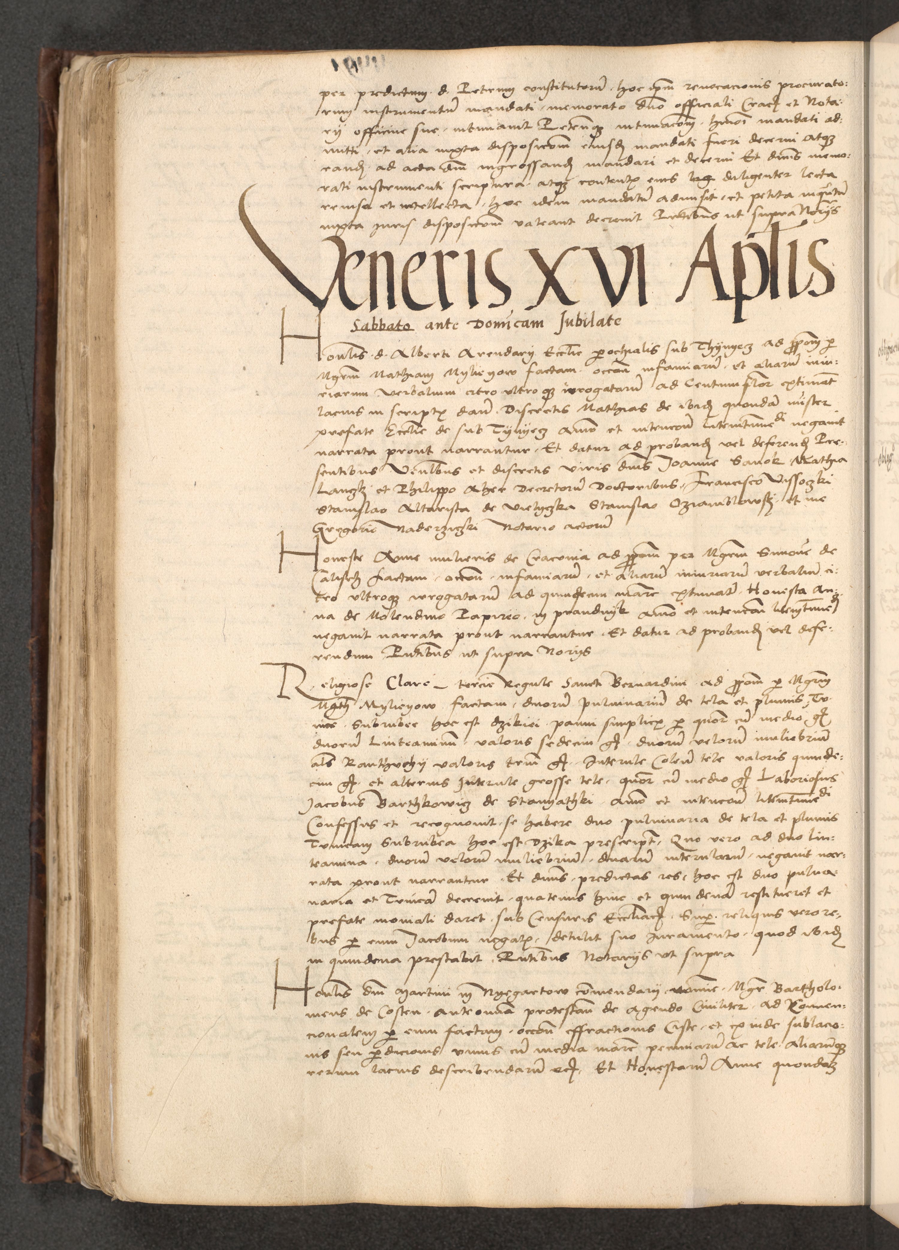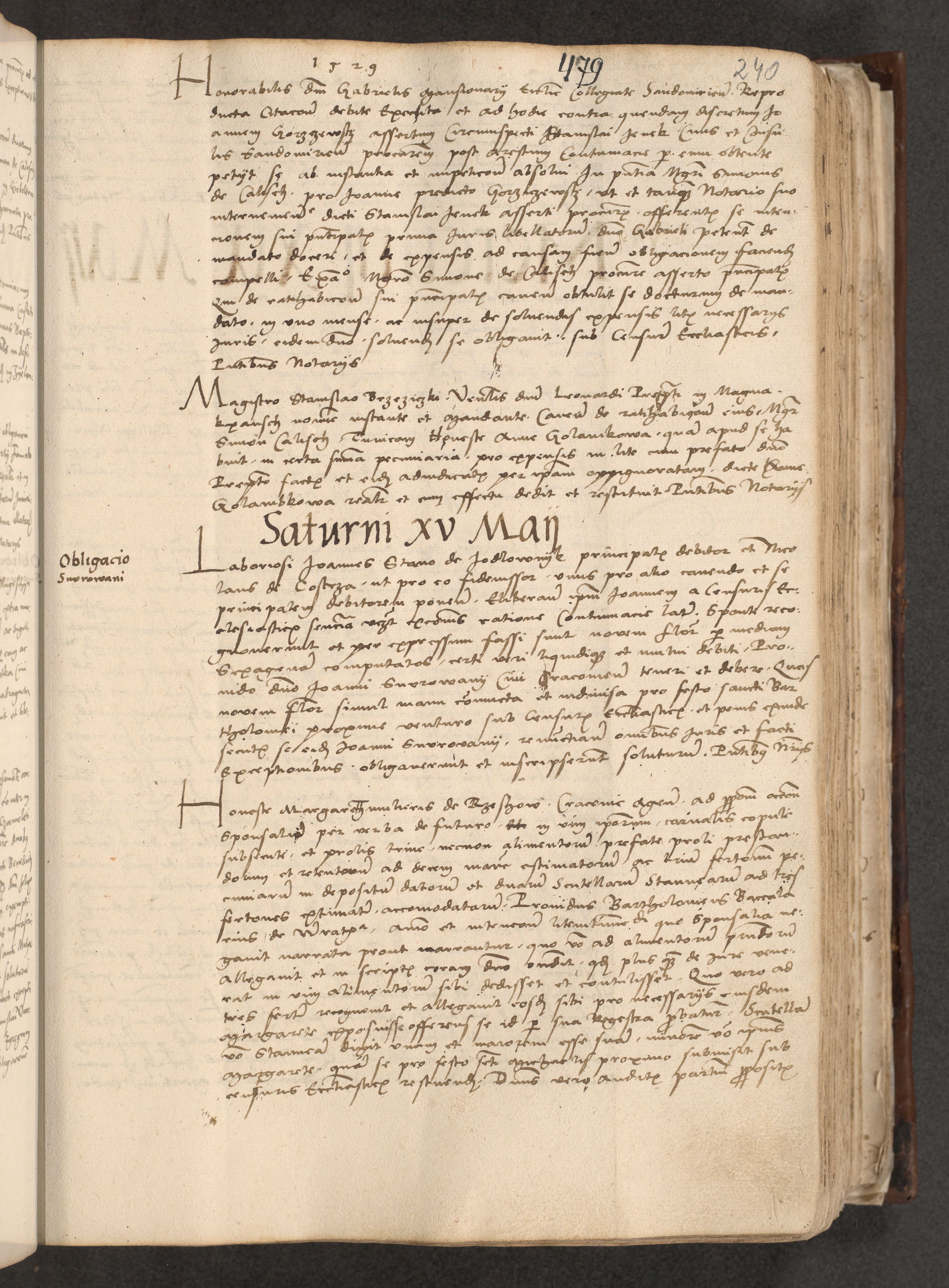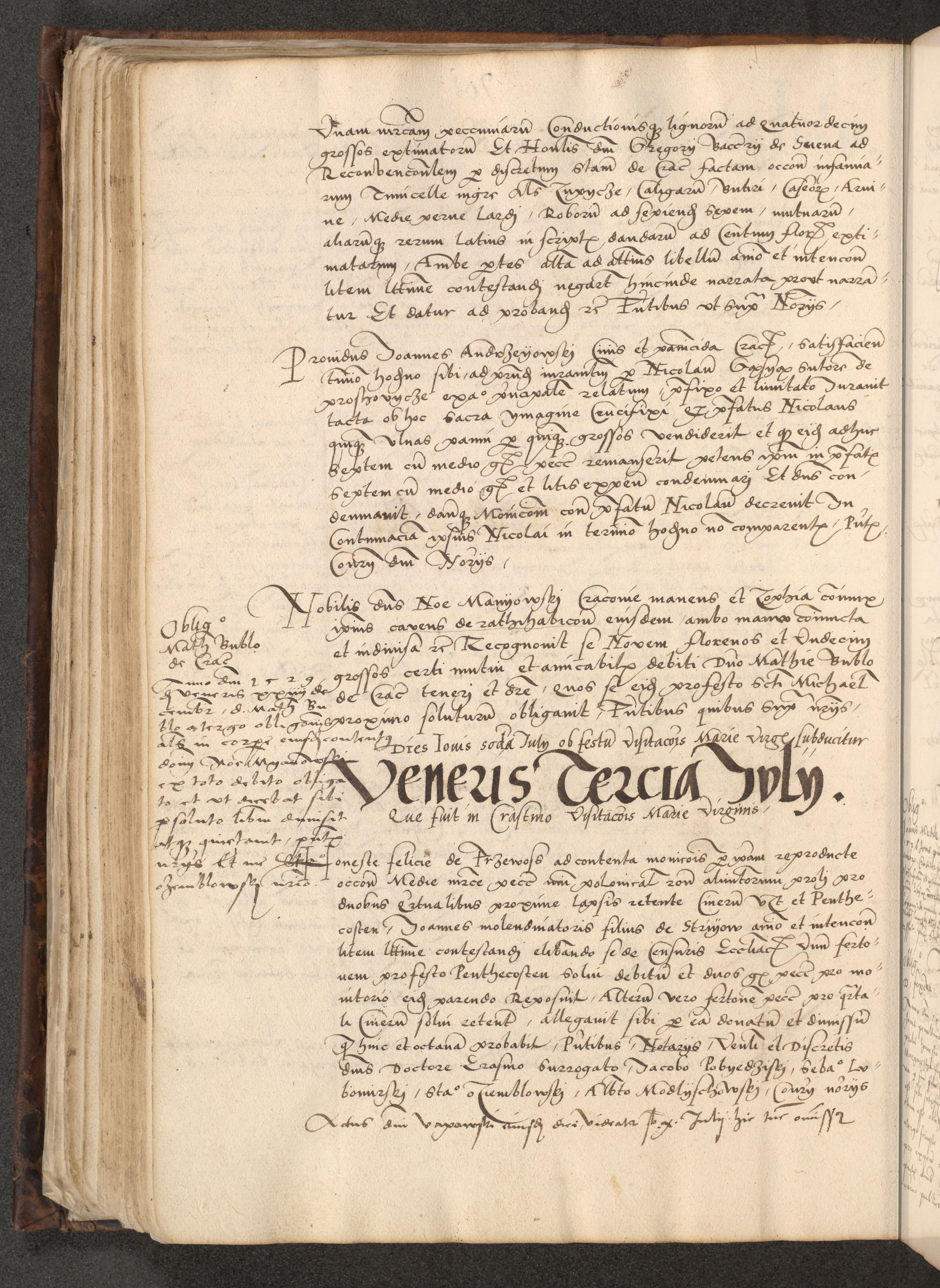 INRI. Acta actorum, obligacionum et sentenciarum tam interlocutoriarum quam diffinitivarum coram reverendo patre ac egregio viro domino Jacobo Erciss[o]wski decretorum doctorem, canonico et officiali generali Cracoviensi ad annum Domini 1528, indicionem primam, pontificatus sanctissimi in Christo patris et domini domini Clementis divina probidendcia pape seprtimi, annum quintum, per Stanislaum de Mordi legalem consistorii notarium omine felici inchoantur