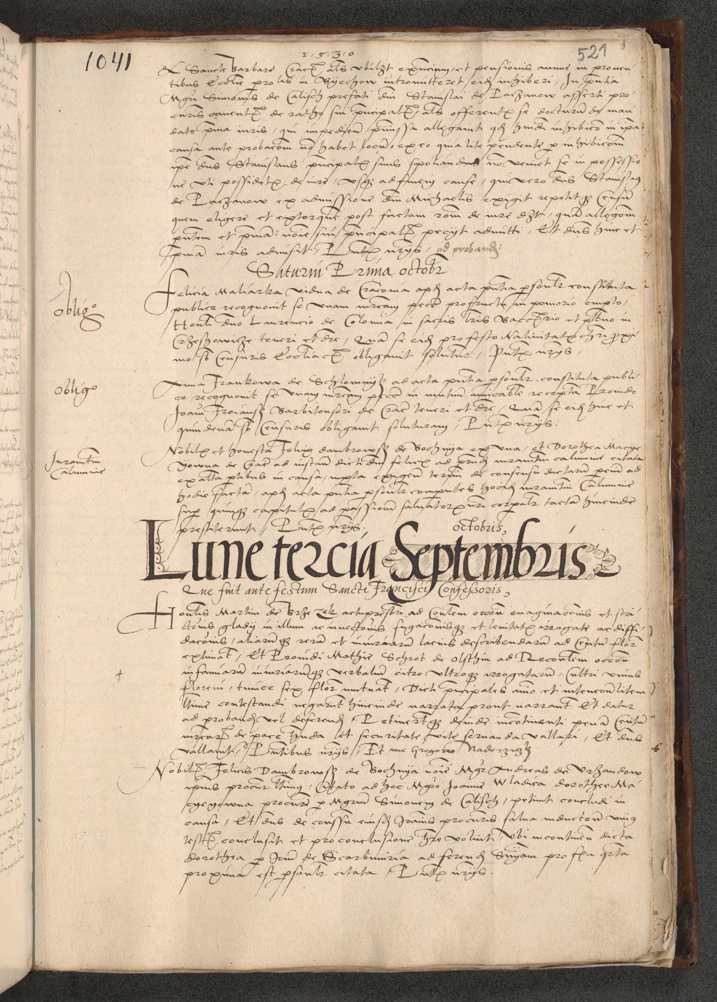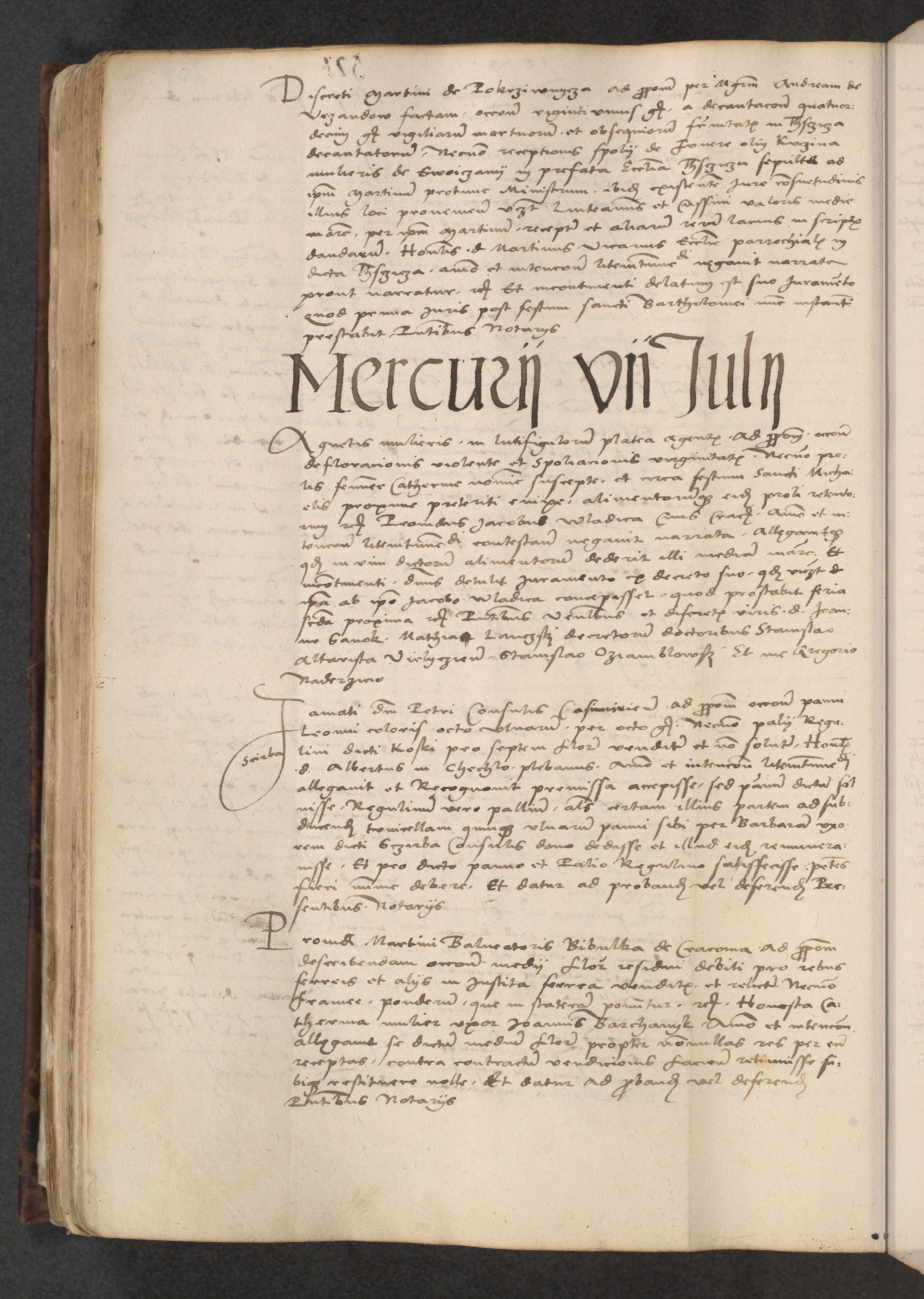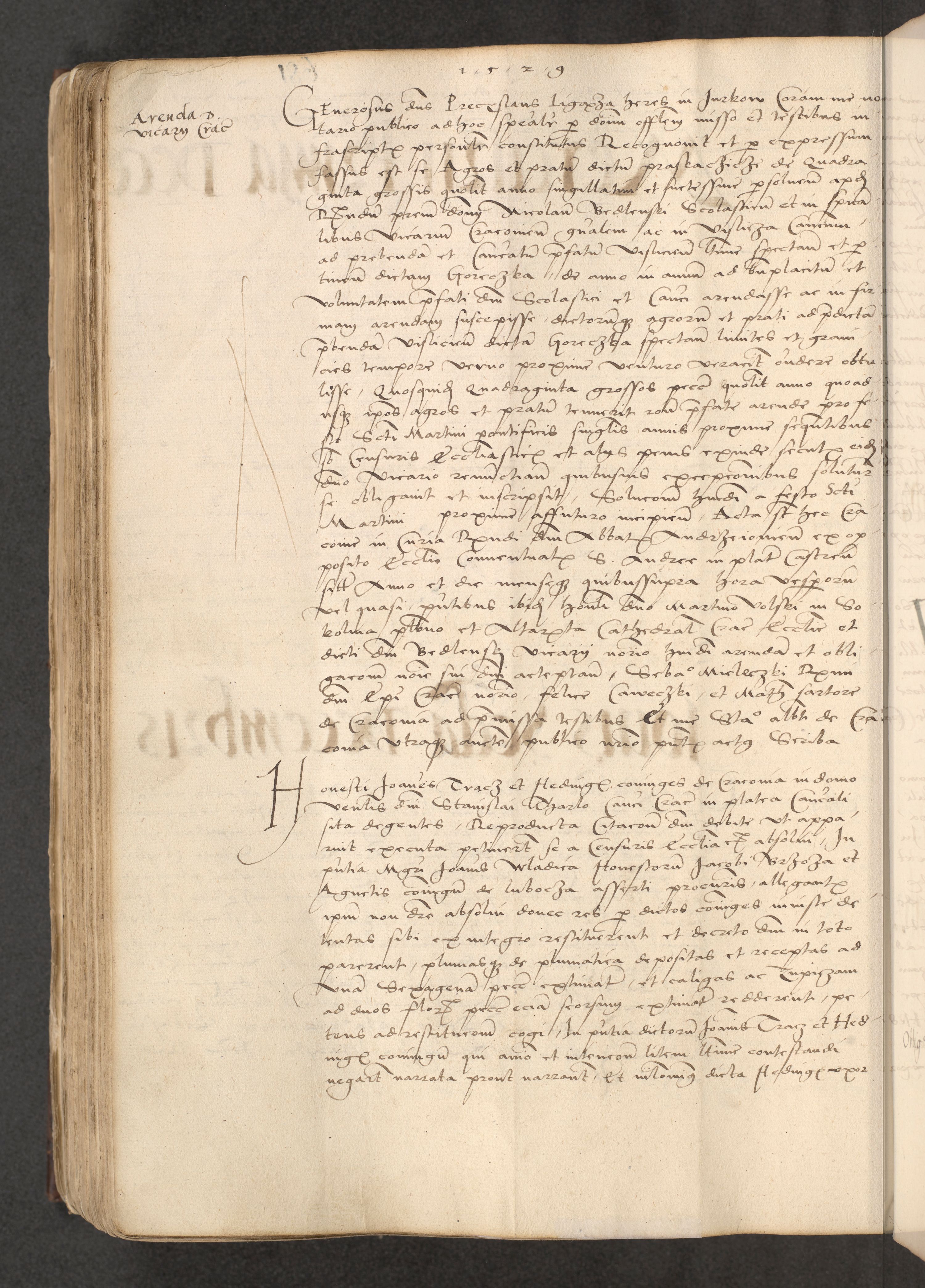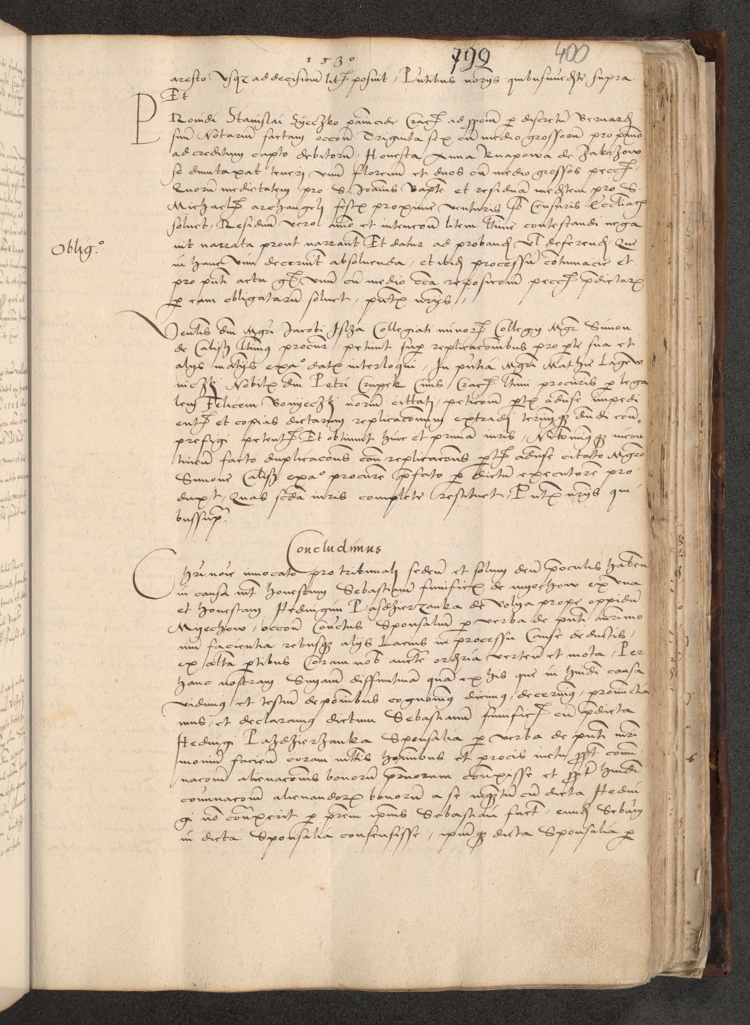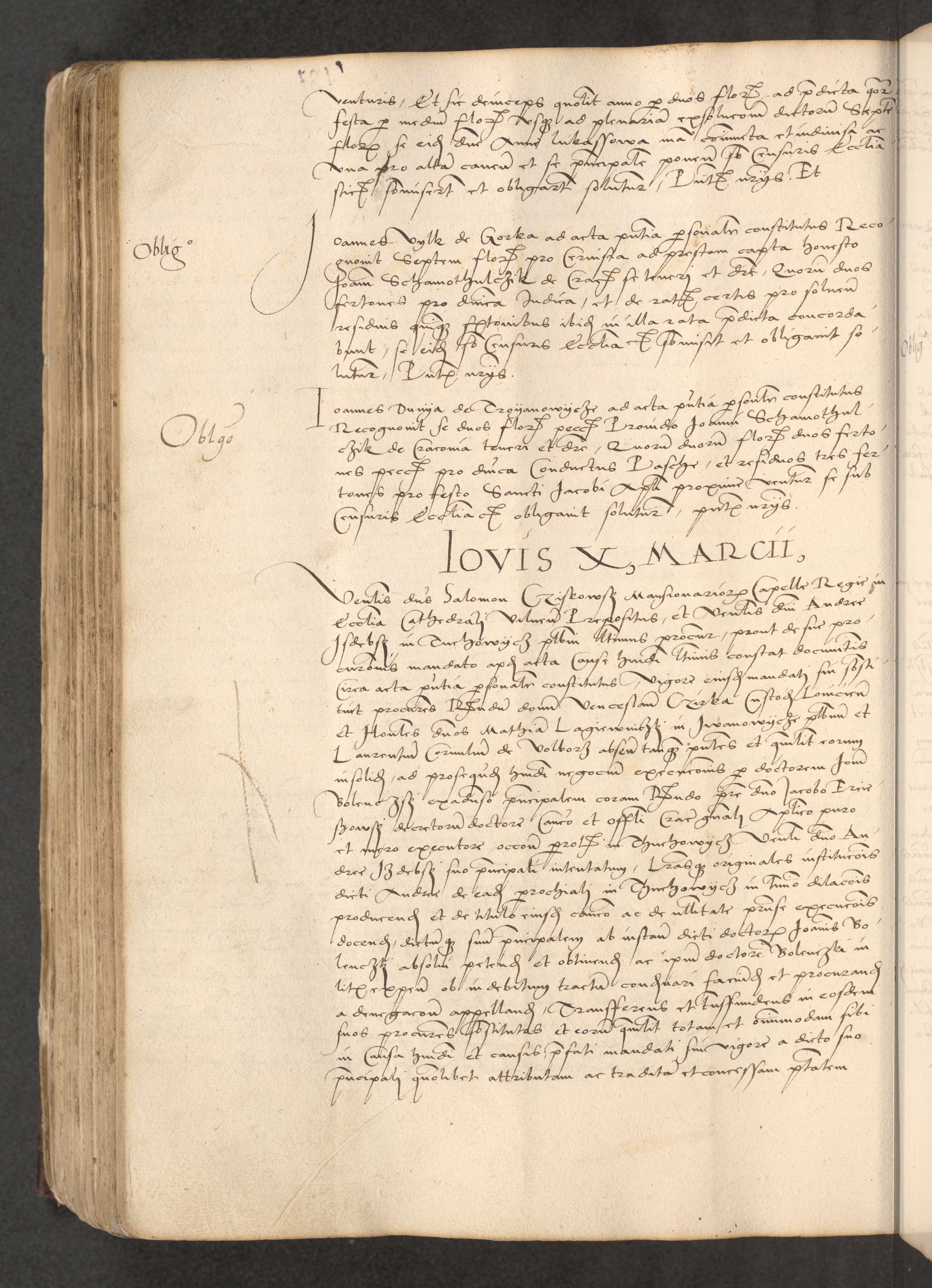 INRI. Acta actorum, obligacionum et sentenciarum tam interlocutoriarum quam diffinitivarum coram reverendo patre ac egregio viro domino Jacobo Erciss[o]wski decretorum doctorem, canonico et officiali generali Cracoviensi ad annum Domini 1528, indicionem primam, pontificatus sanctissimi in Christo patris et domini domini Clementis divina probidendcia pape seprtimi, annum quintum, per Stanislaum de Mordi legalem consistorii notarium omine felici inchoantur