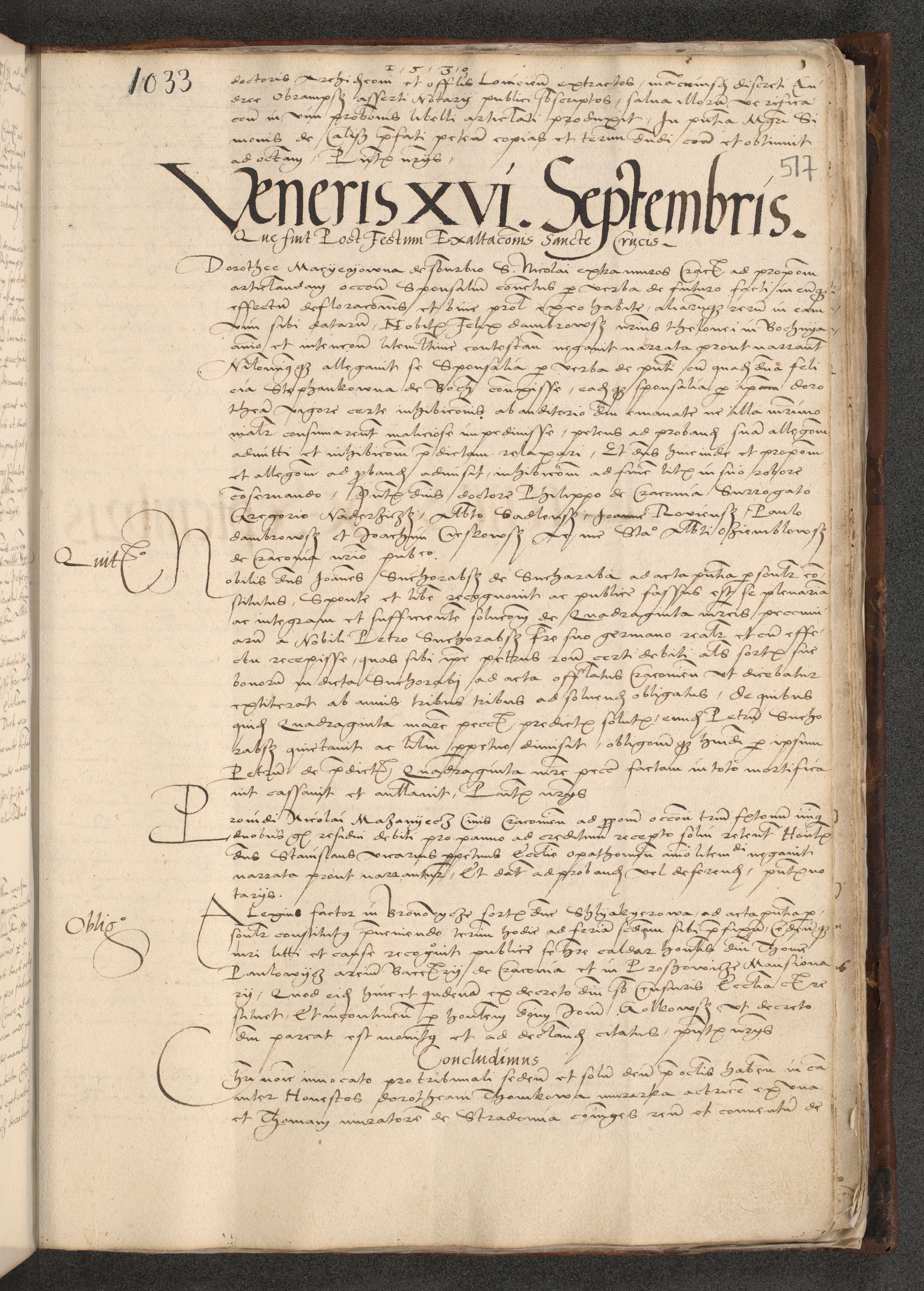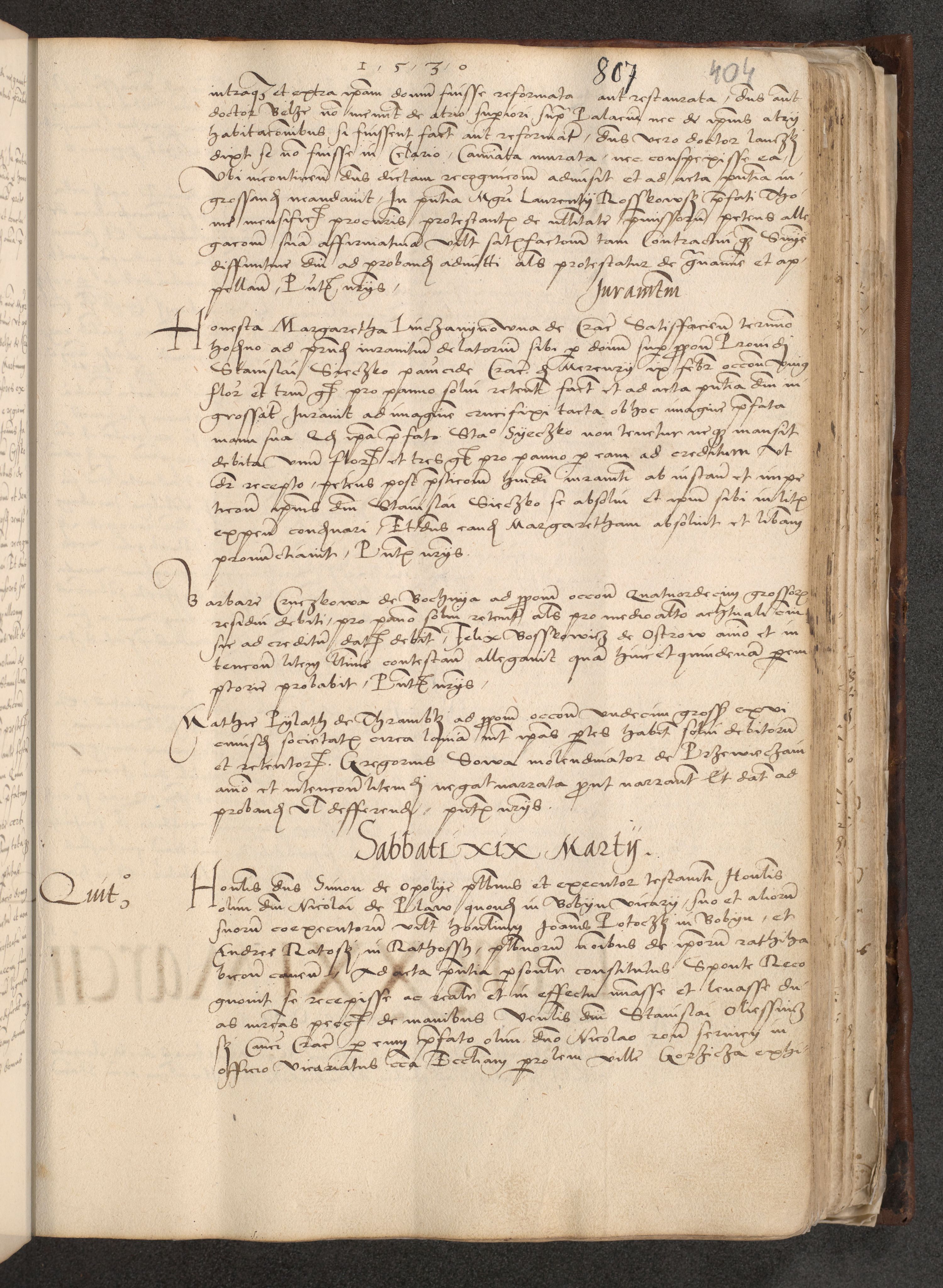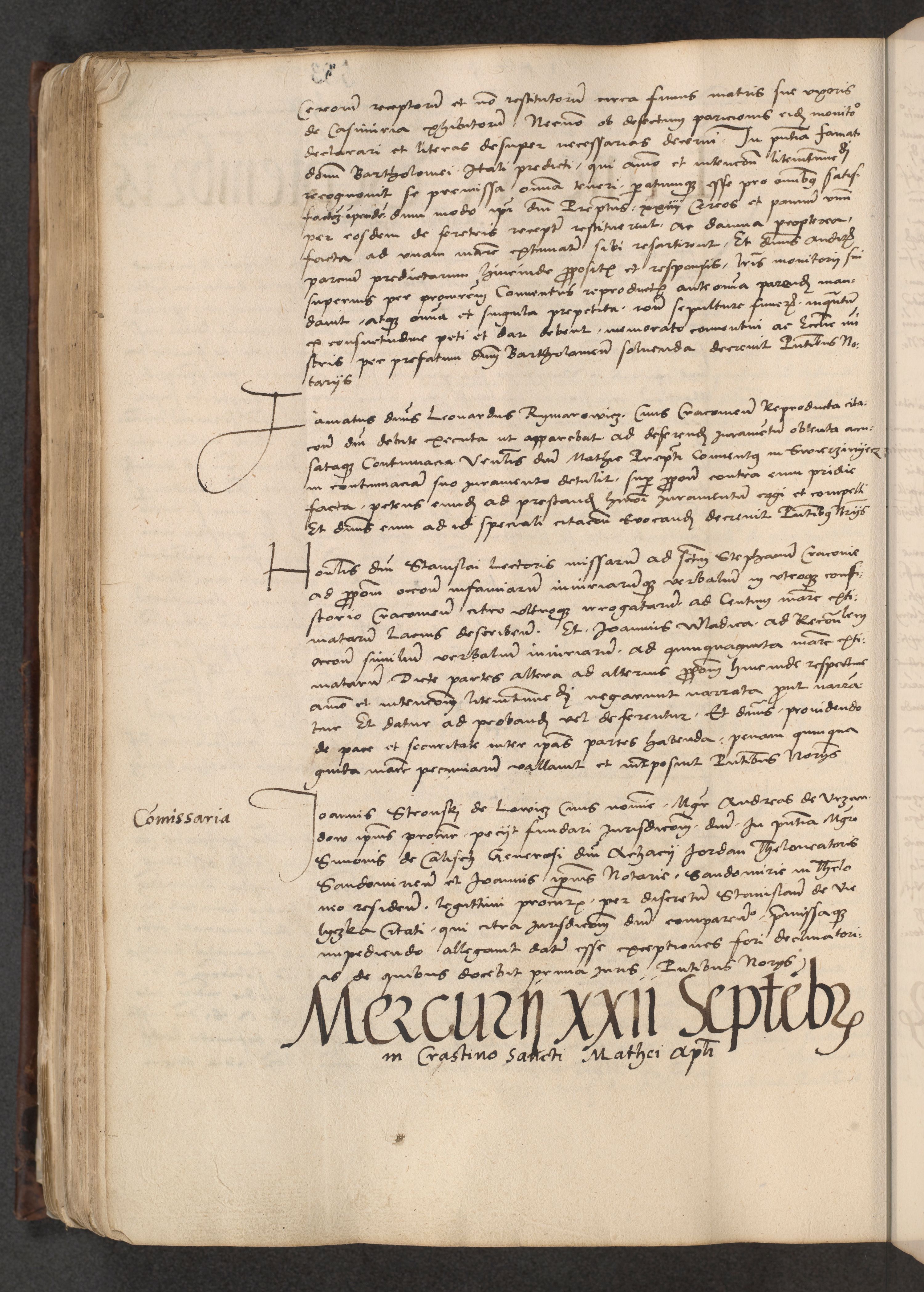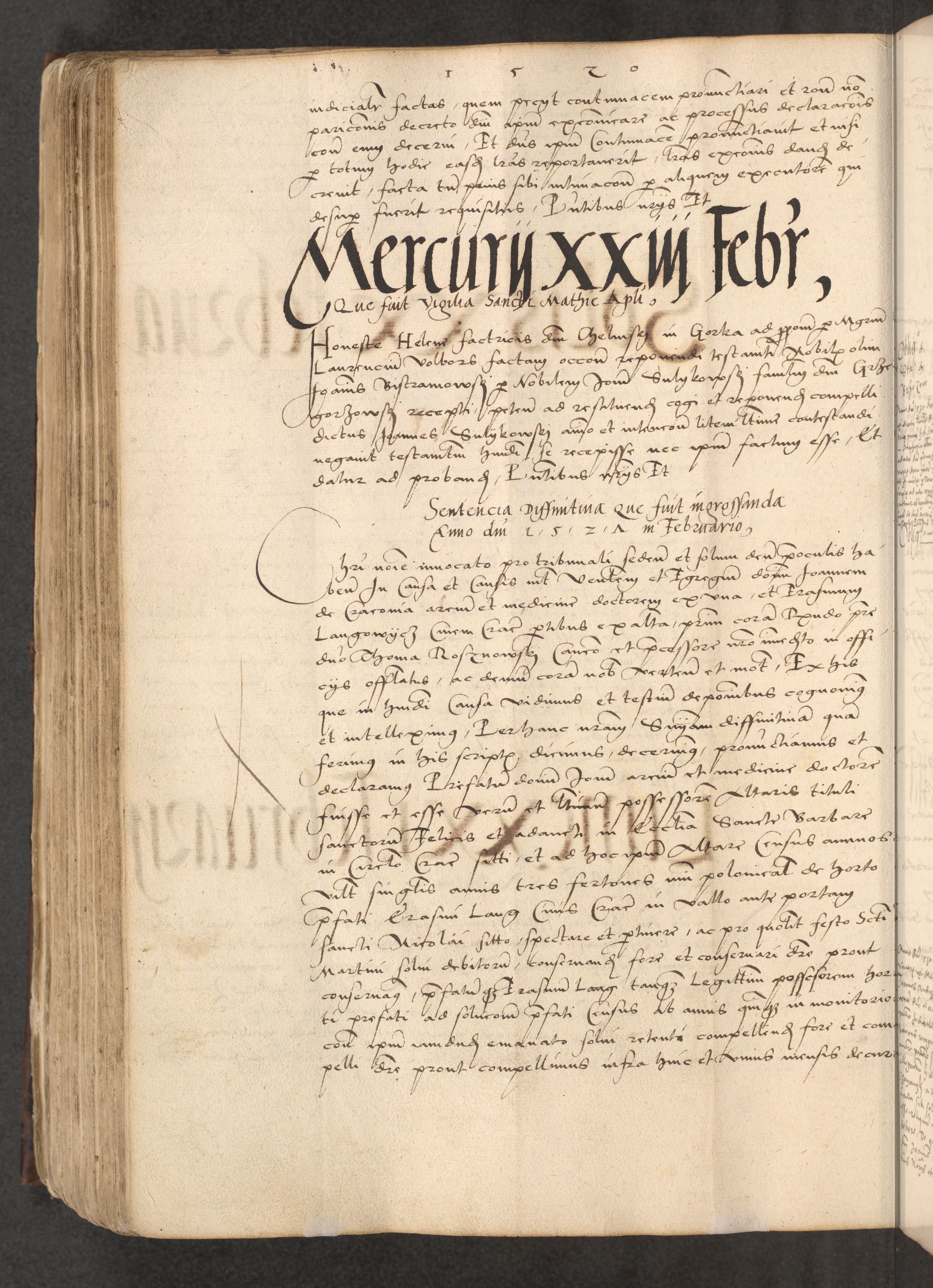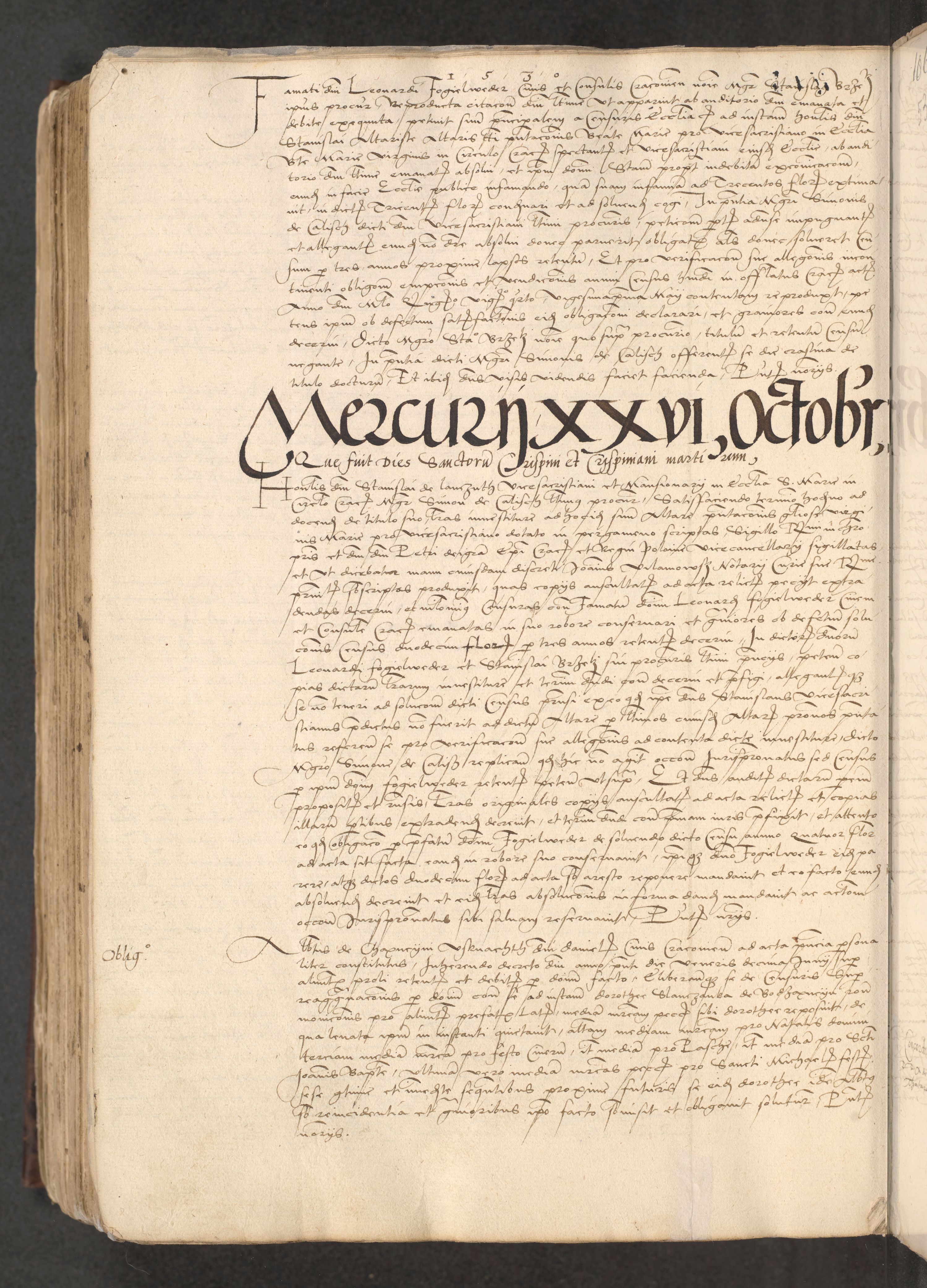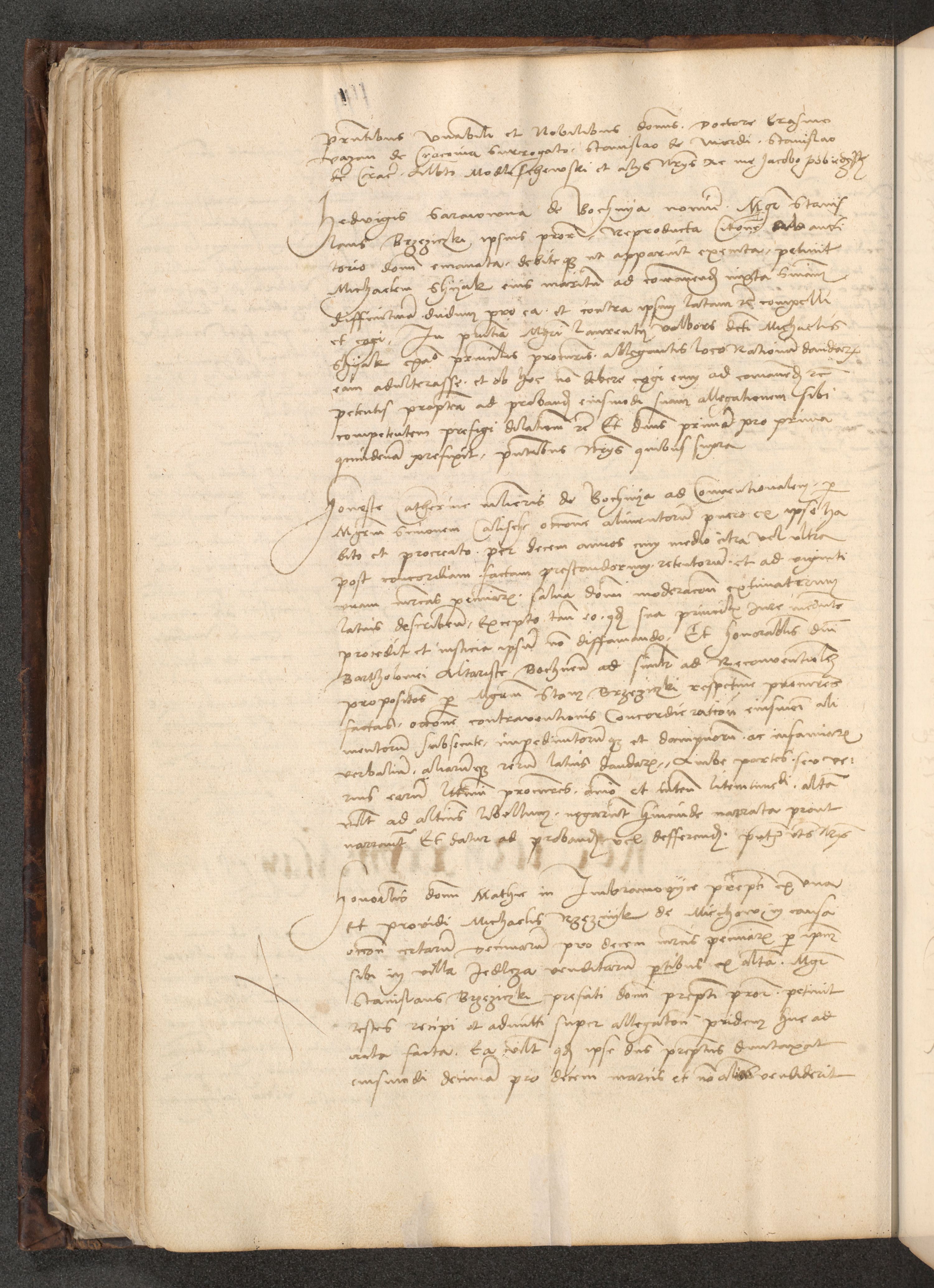INRI. Acta actorum, obligacionum et sentenciarum tam interlocutoriarum quam diffinitivarum coram reverendo patre ac egregio viro domino Jacobo Erciss[o]wski decretorum doctorem, canonico et officiali generali Cracoviensi ad annum Domini 1528, indicionem primam, pontificatus sanctissimi in Christo patris et domini domini Clementis divina probidendcia pape seprtimi, annum quintum, per Stanislaum de Mordi legalem consistorii notarium omine felici inchoantur
