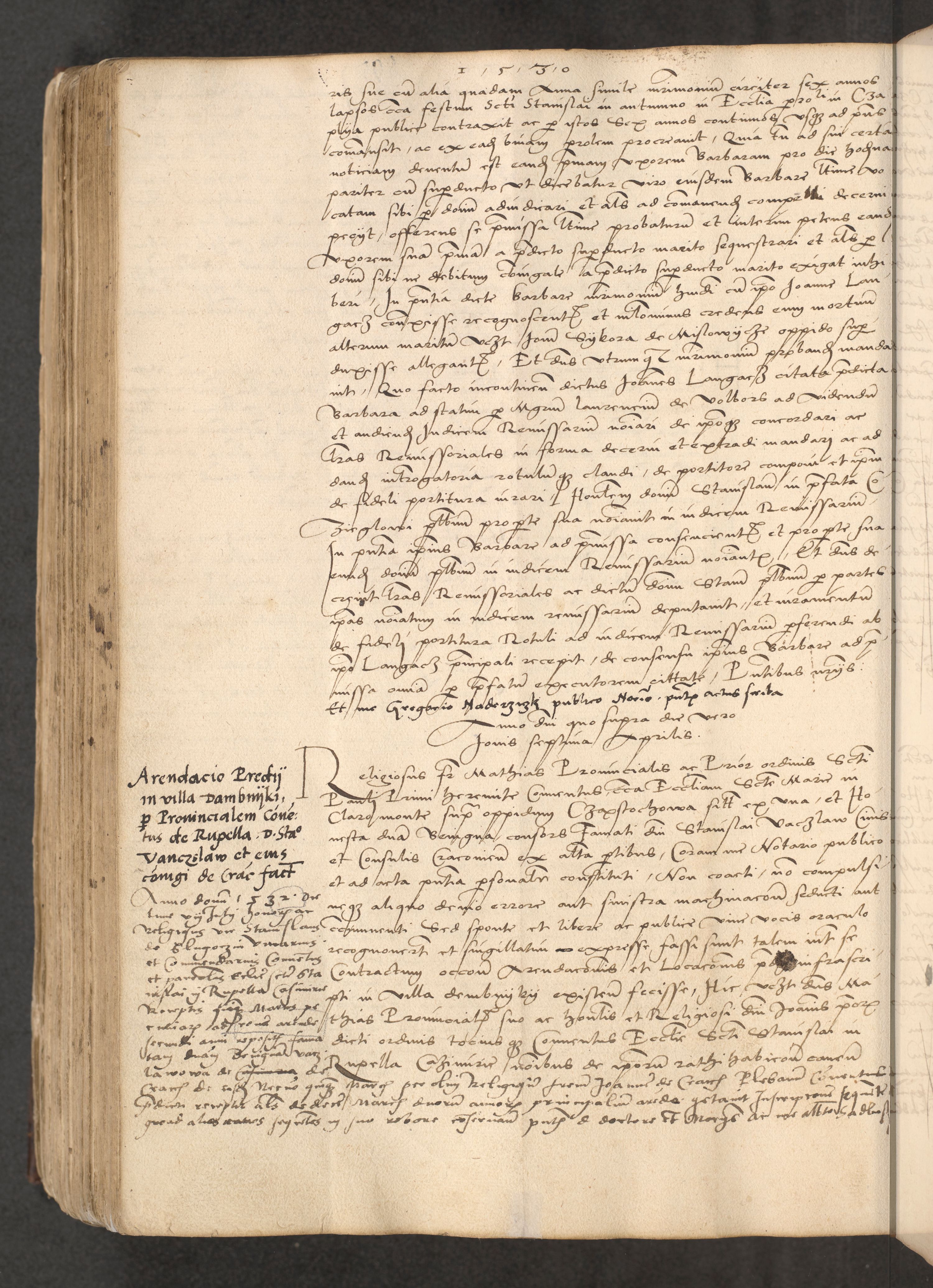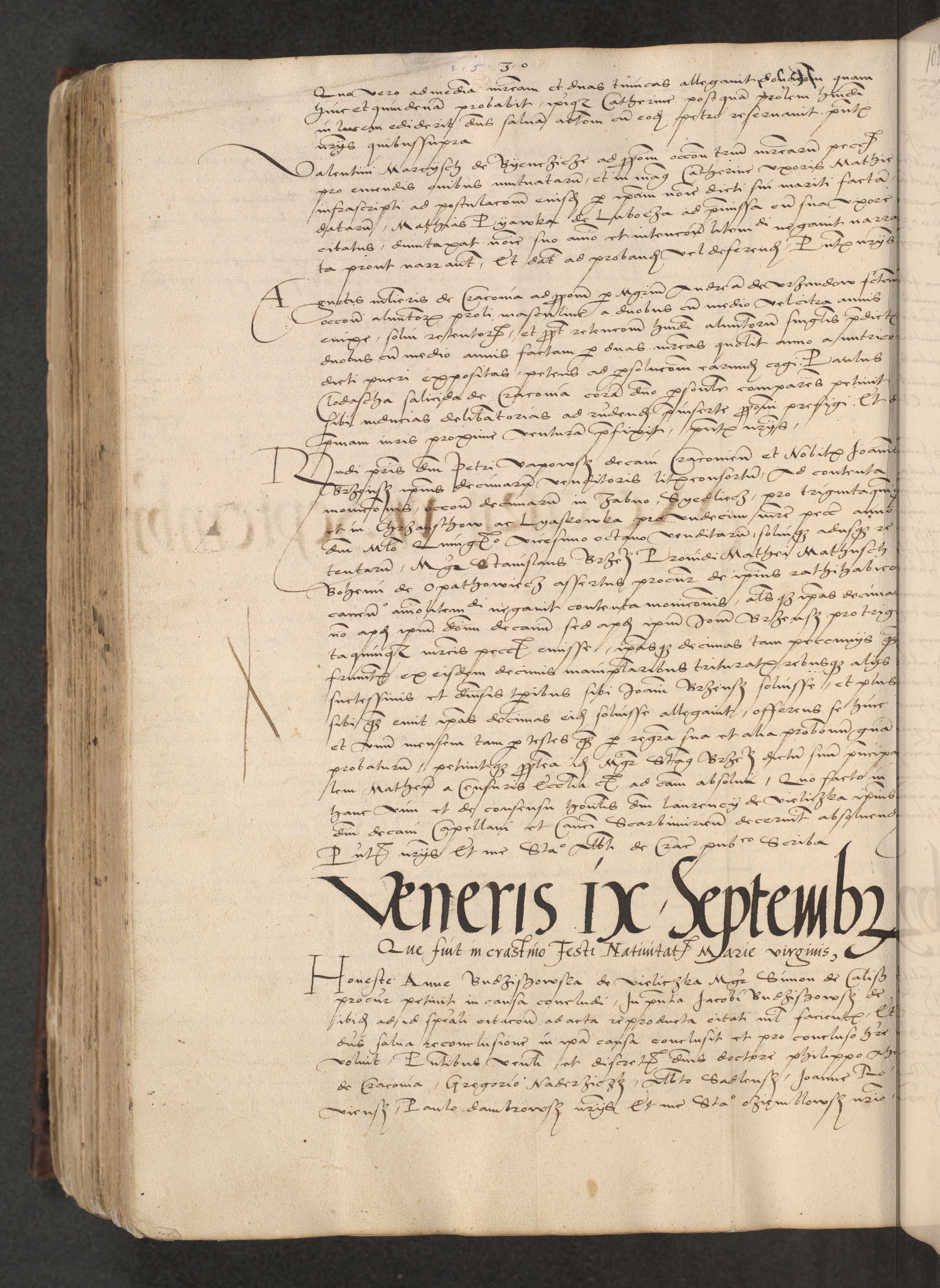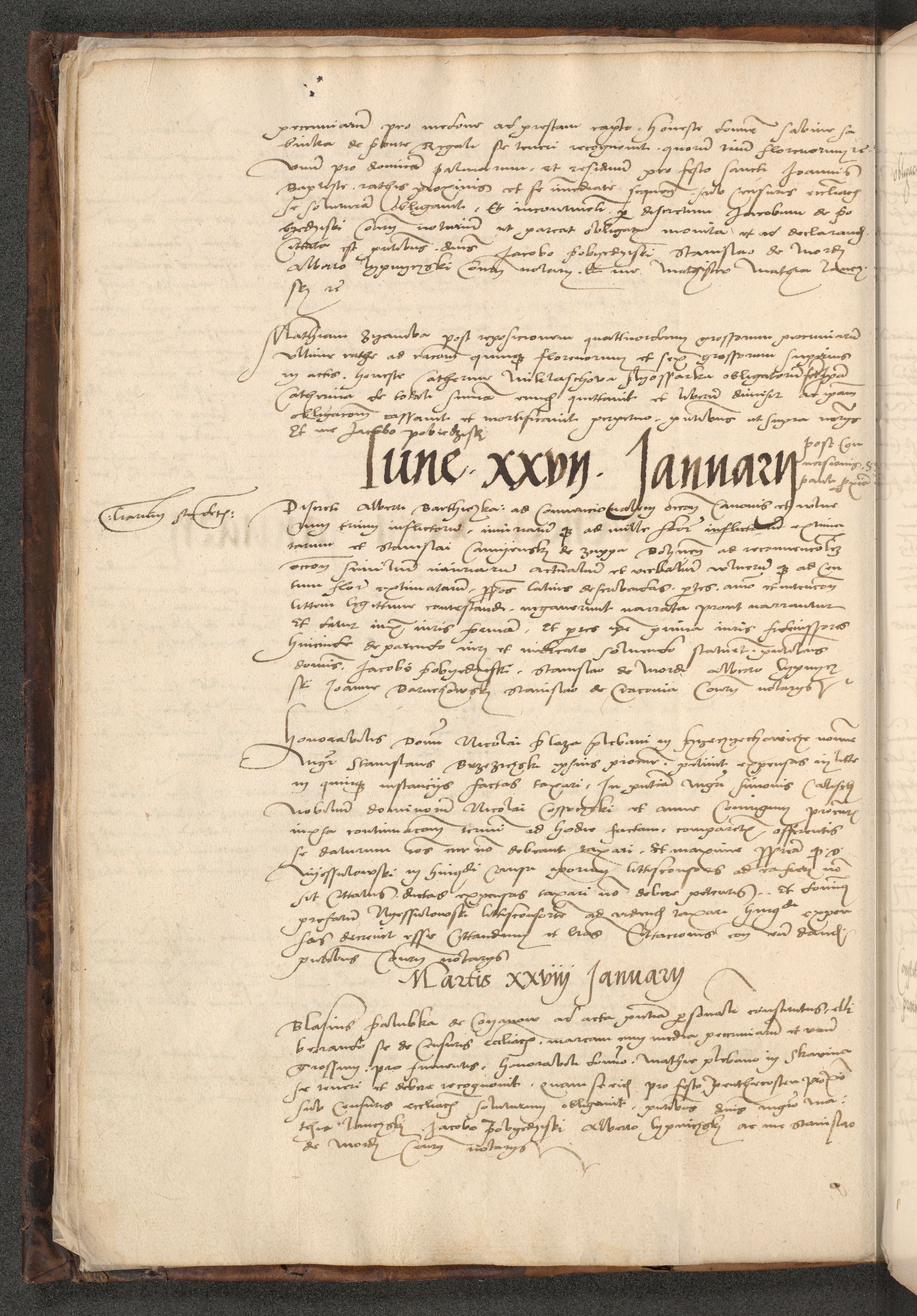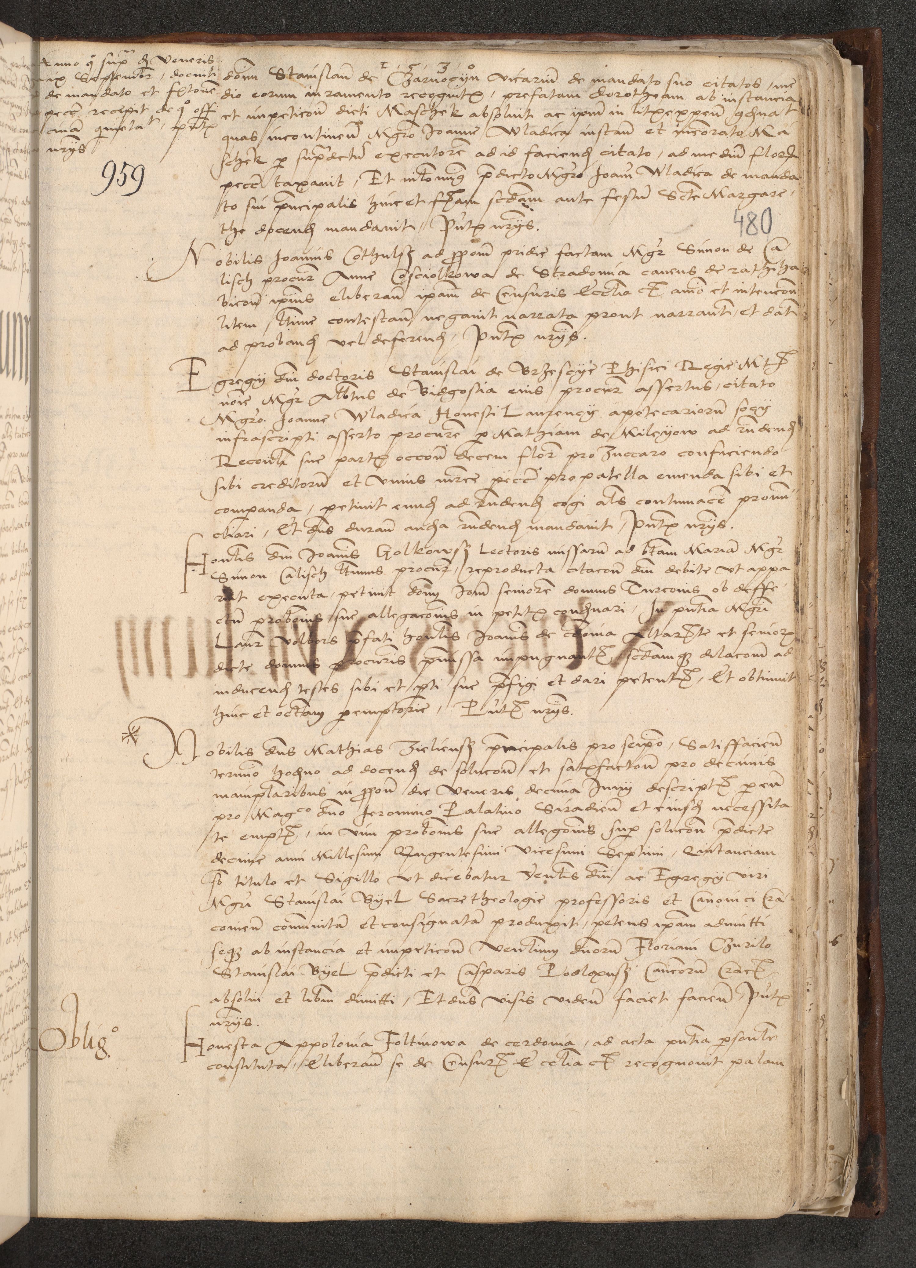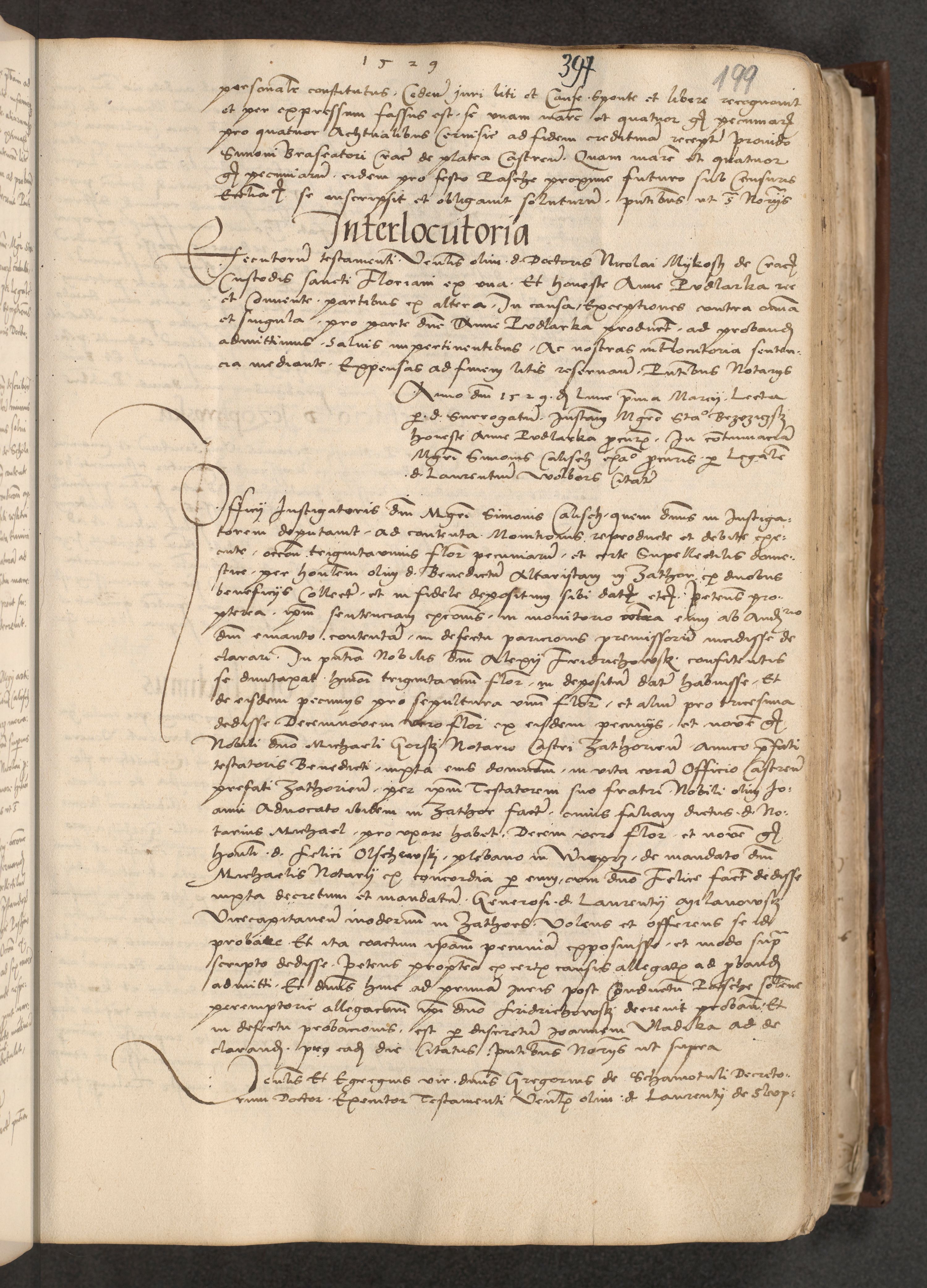 INRI. Acta actorum, obligacionum et sentenciarum tam interlocutoriarum quam diffinitivarum coram reverendo patre ac egregio viro domino Jacobo Erciss[o]wski decretorum doctorem, canonico et officiali generali Cracoviensi ad annum Domini 1528, indicionem primam, pontificatus sanctissimi in Christo patris et domini domini Clementis divina probidendcia pape seprtimi, annum quintum, per Stanislaum de Mordi legalem consistorii notarium omine felici inchoantur