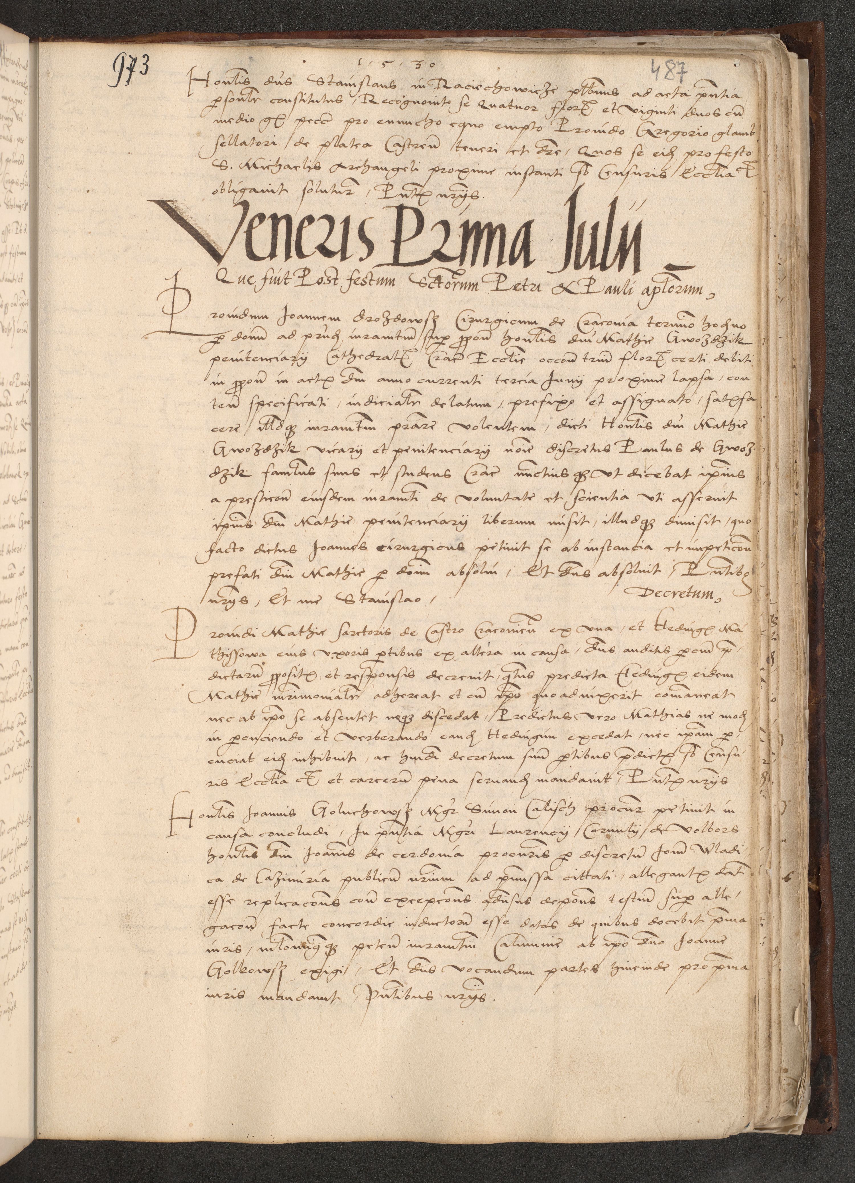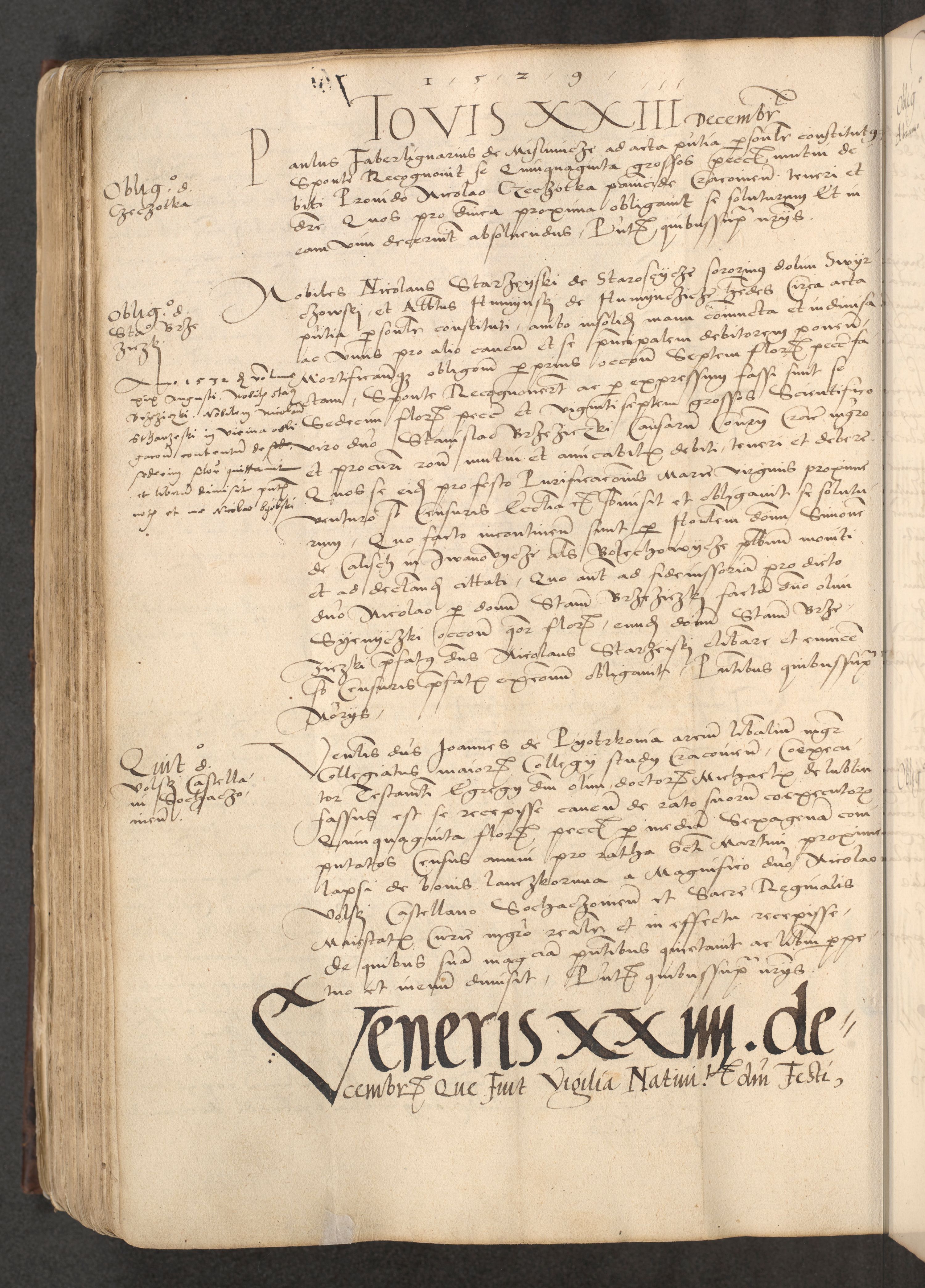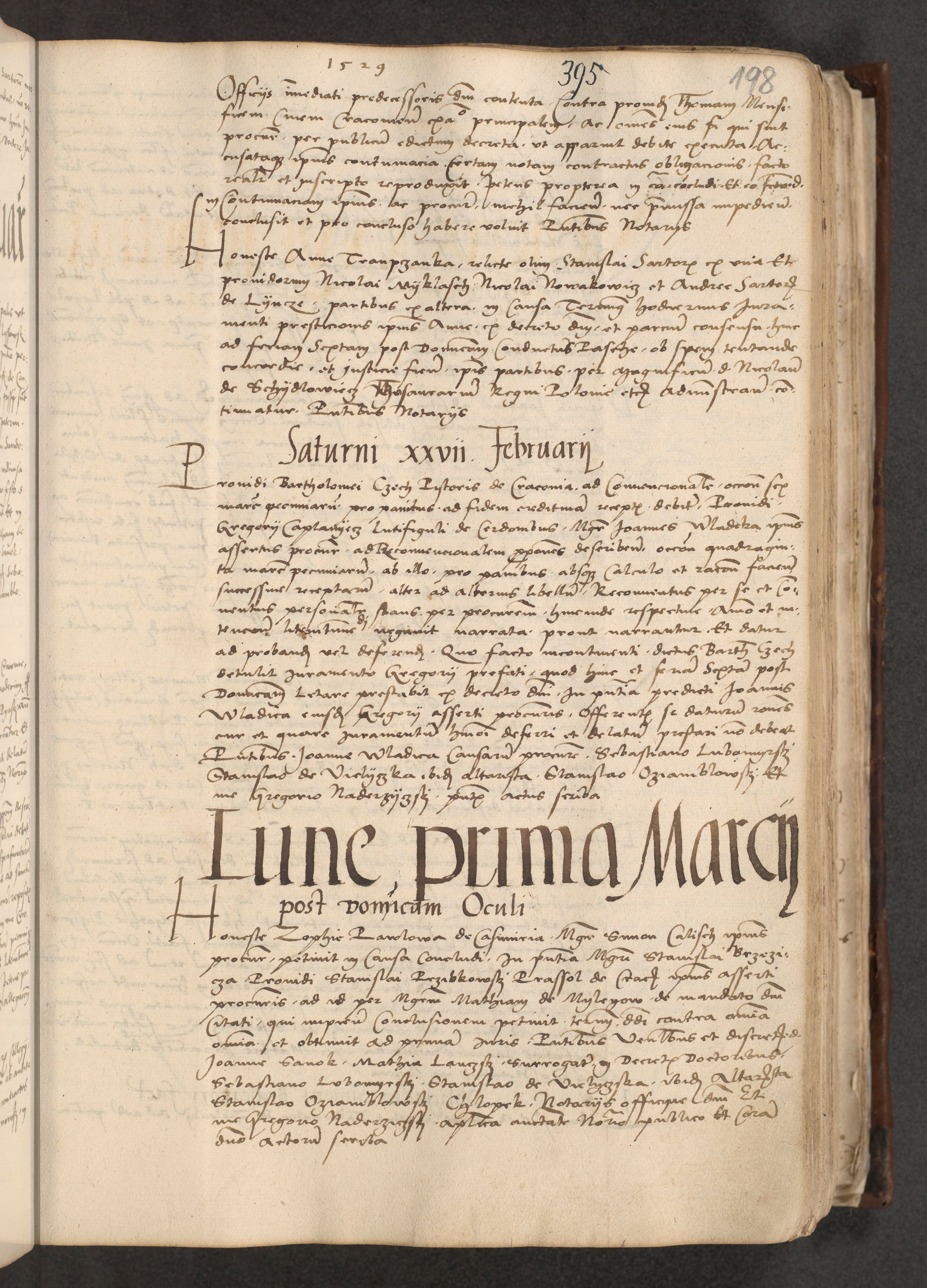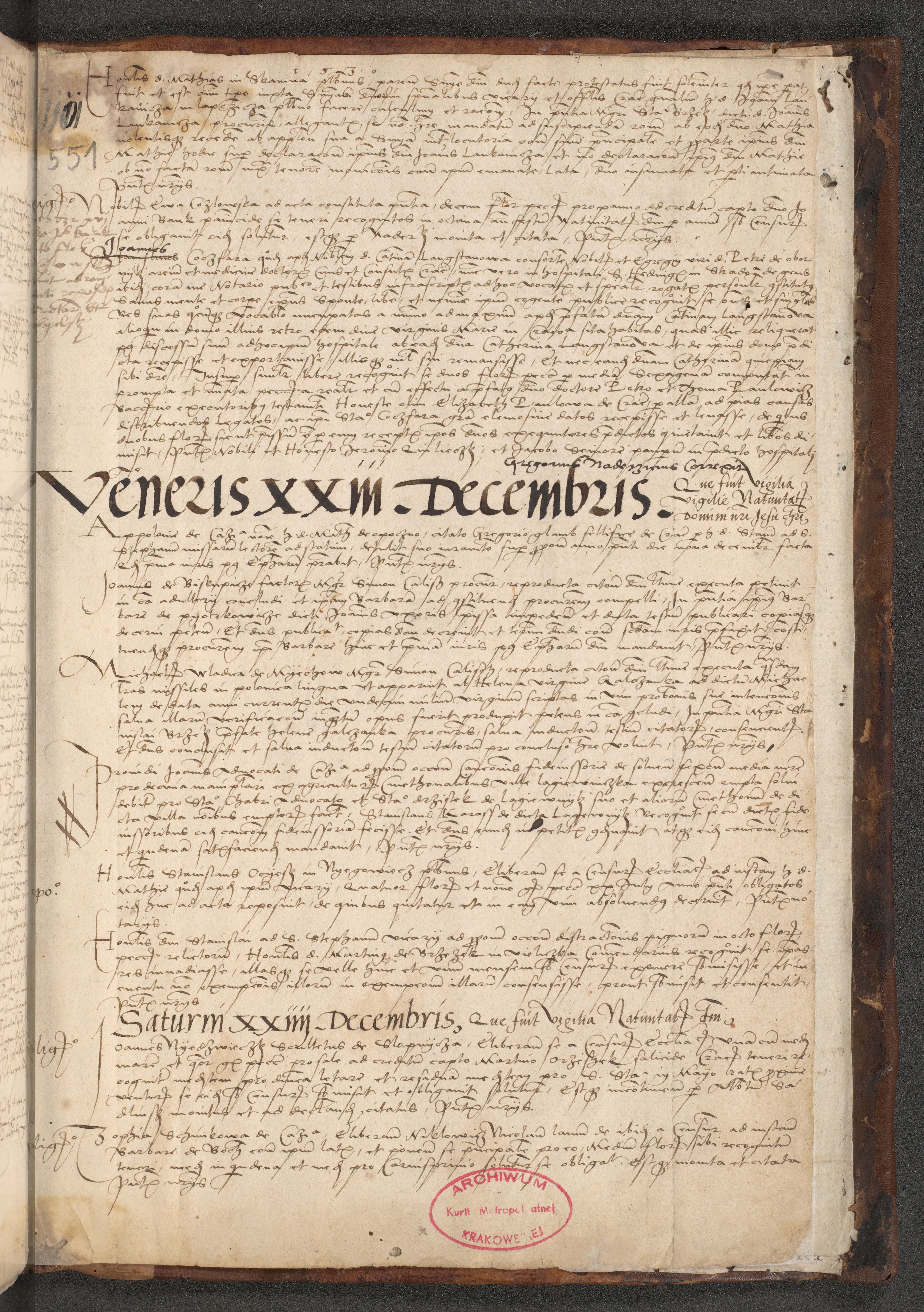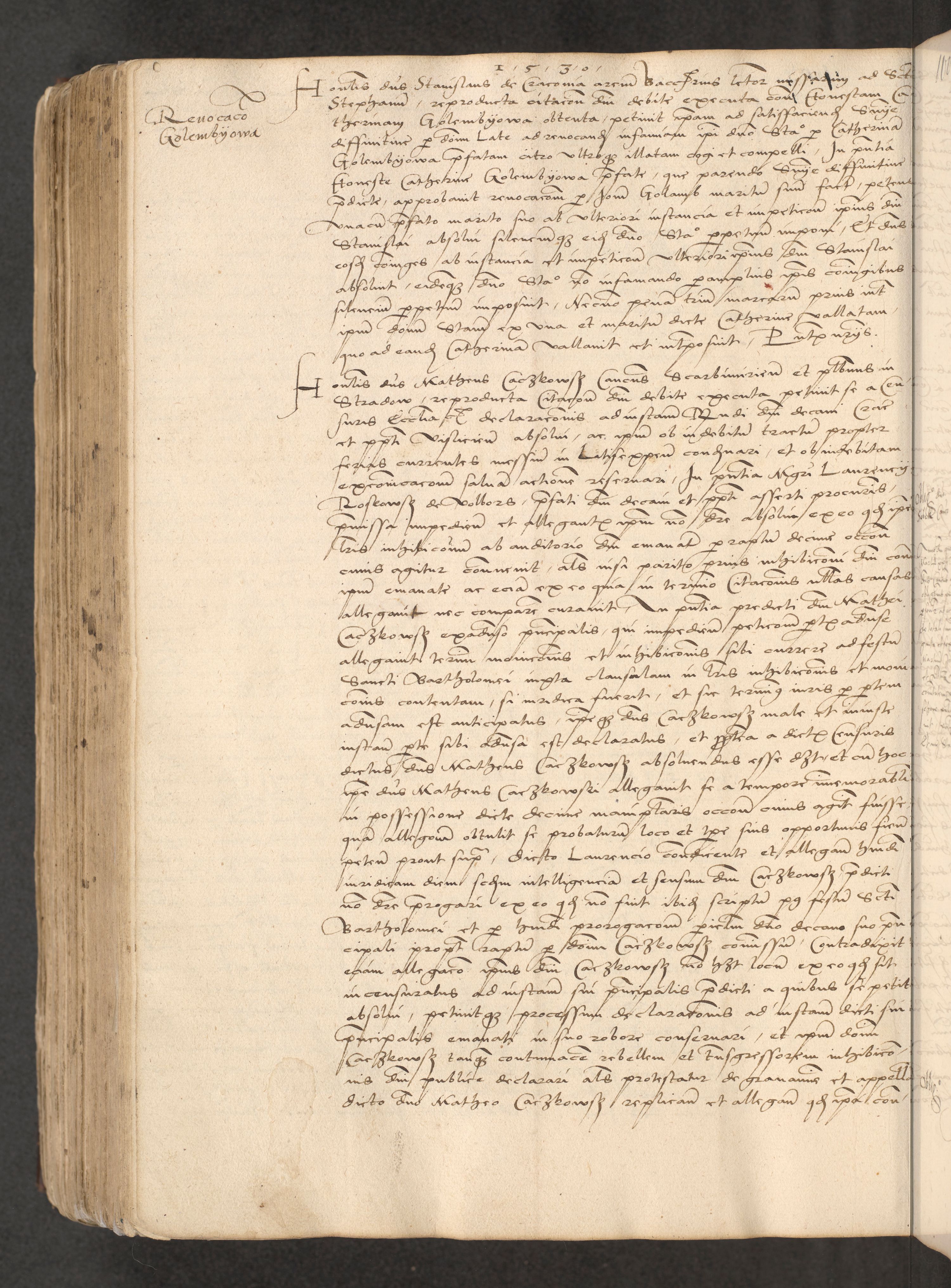 INRI. Acta actorum, obligacionum et sentenciarum tam interlocutoriarum quam diffinitivarum coram reverendo patre ac egregio viro domino Jacobo Erciss[o]wski decretorum doctorem, canonico et officiali generali Cracoviensi ad annum Domini 1528, indicionem primam, pontificatus sanctissimi in Christo patris et domini domini Clementis divina probidendcia pape seprtimi, annum quintum, per Stanislaum de Mordi legalem consistorii notarium omine felici inchoantur