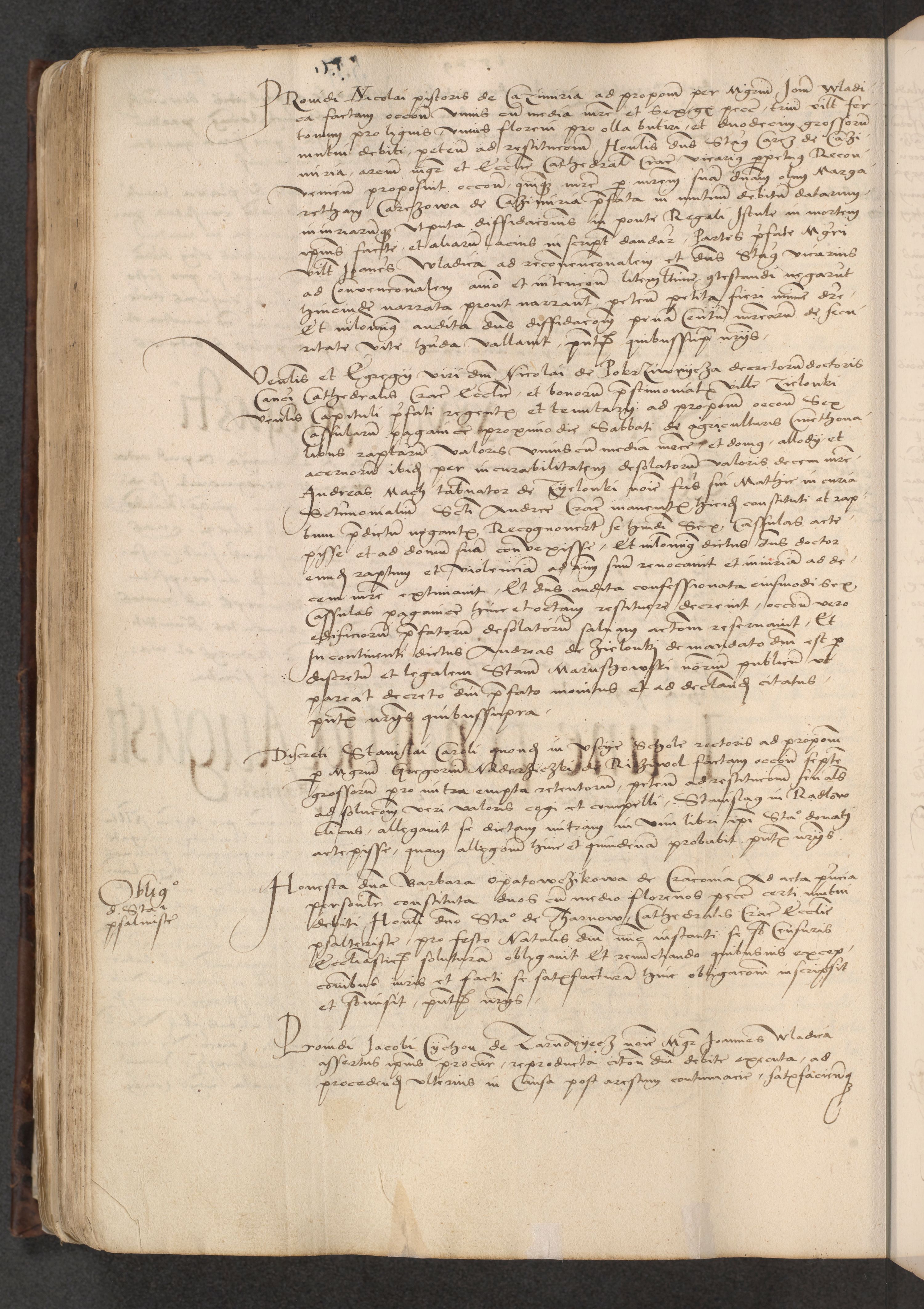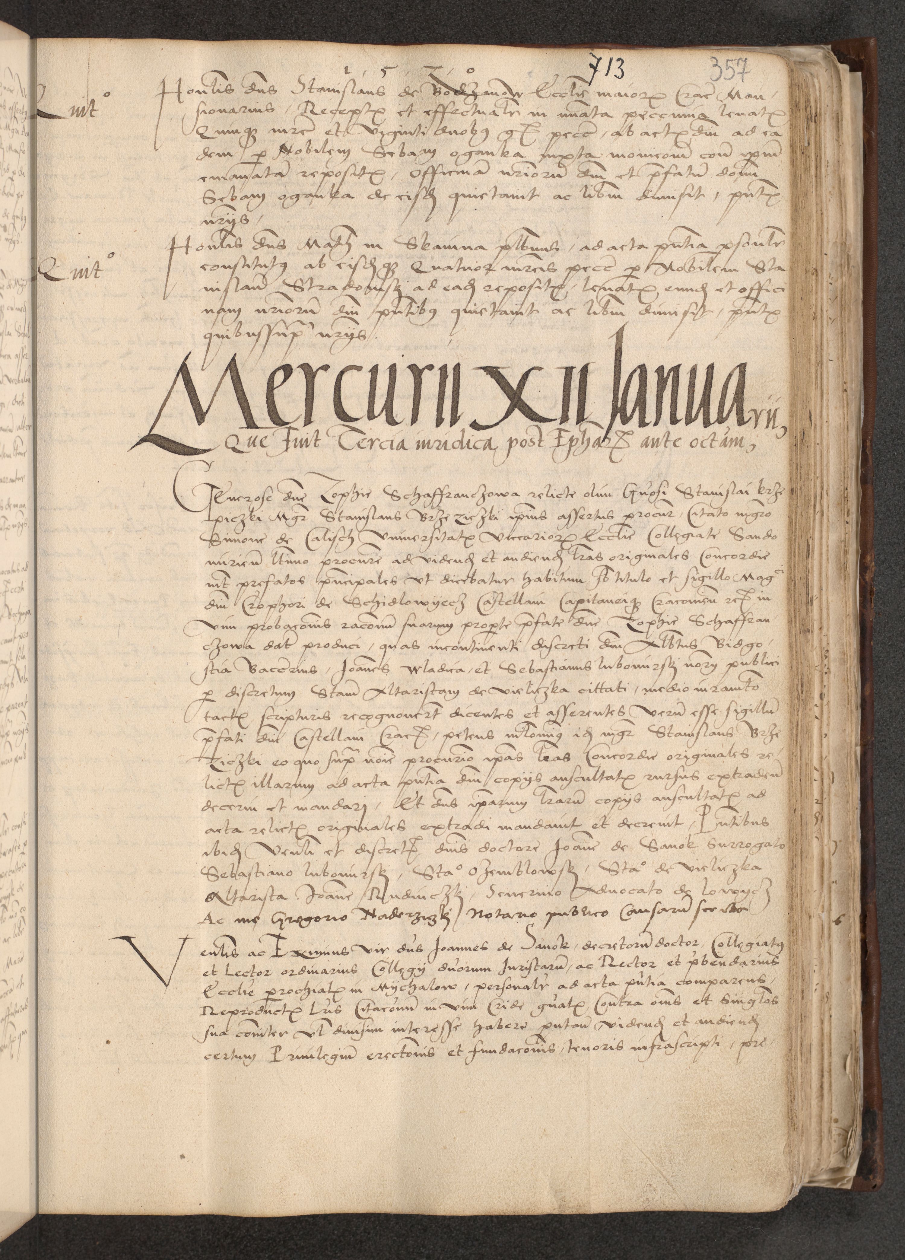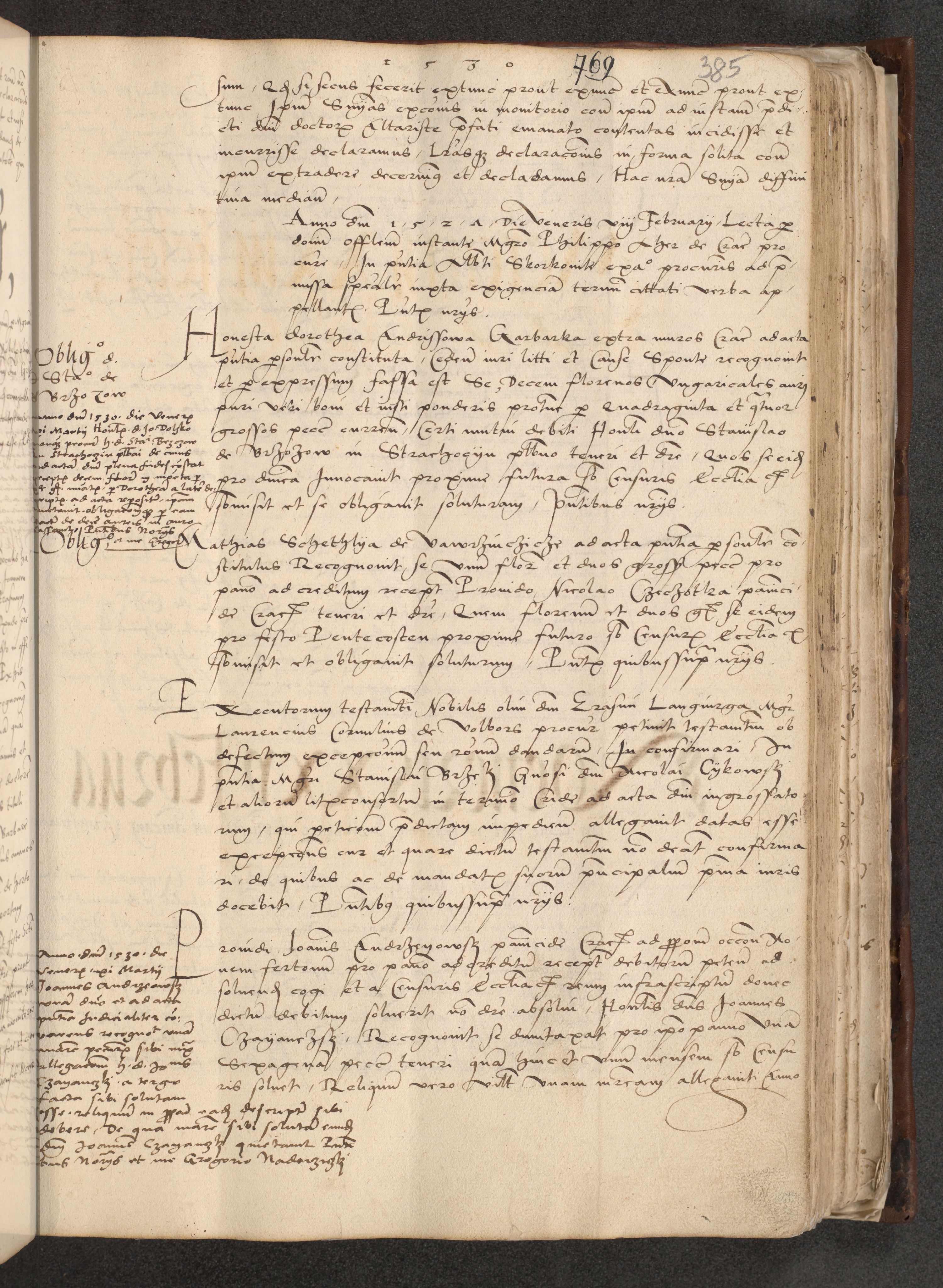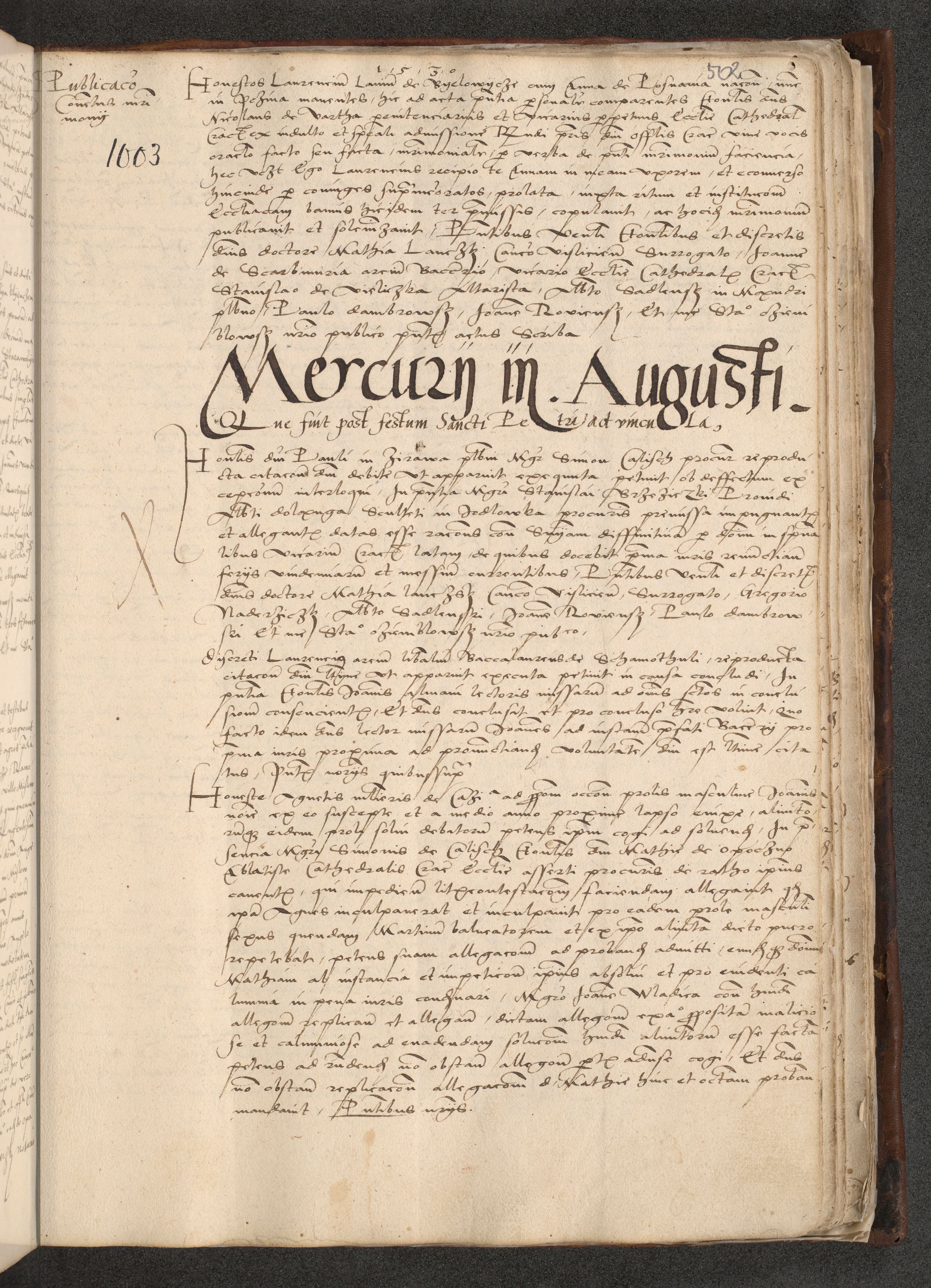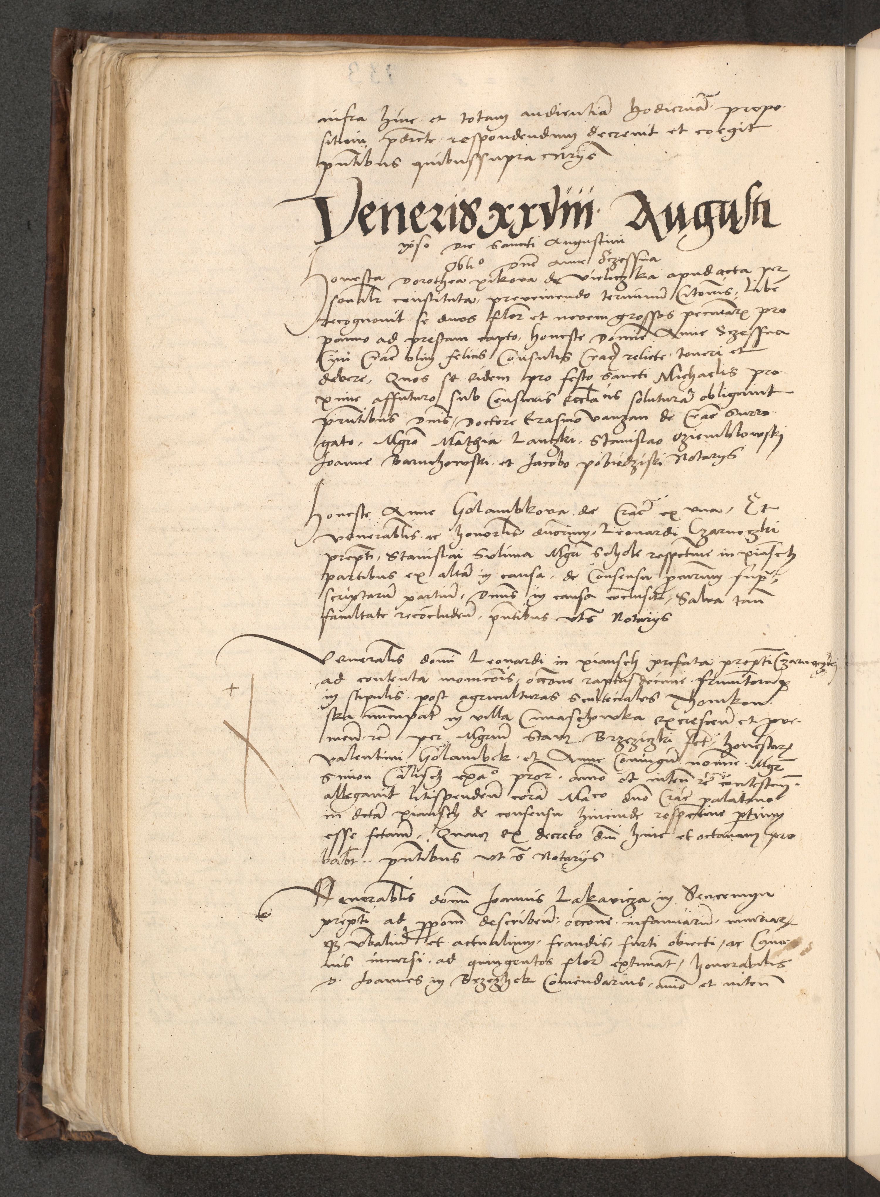 INRI. Acta actorum, obligacionum et sentenciarum tam interlocutoriarum quam diffinitivarum coram reverendo patre ac egregio viro domino Jacobo Erciss[o]wski decretorum doctorem, canonico et officiali generali Cracoviensi ad annum Domini 1528, indicionem primam, pontificatus sanctissimi in Christo patris et domini domini Clementis divina probidendcia pape seprtimi, annum quintum, per Stanislaum de Mordi legalem consistorii notarium omine felici inchoantur