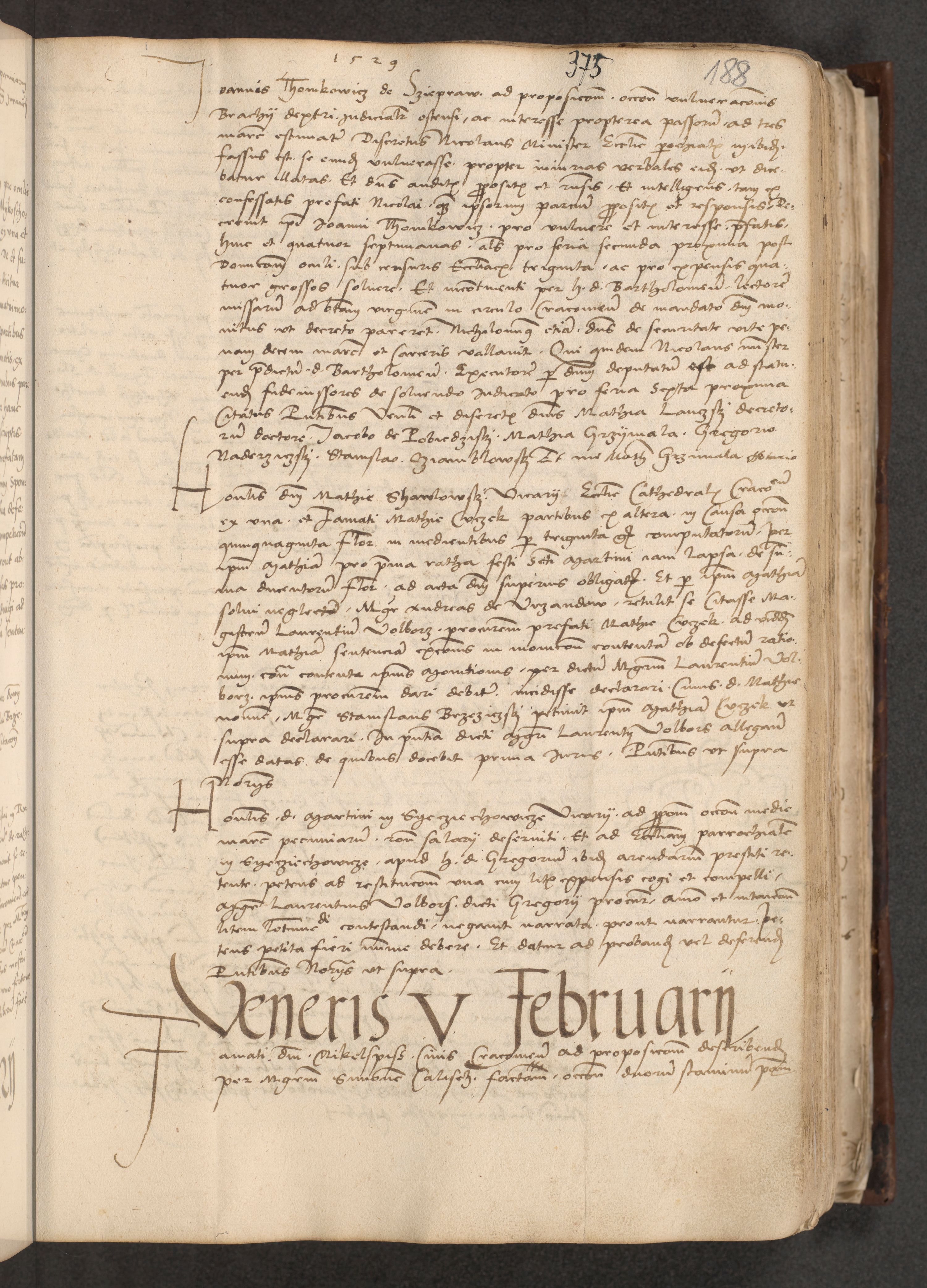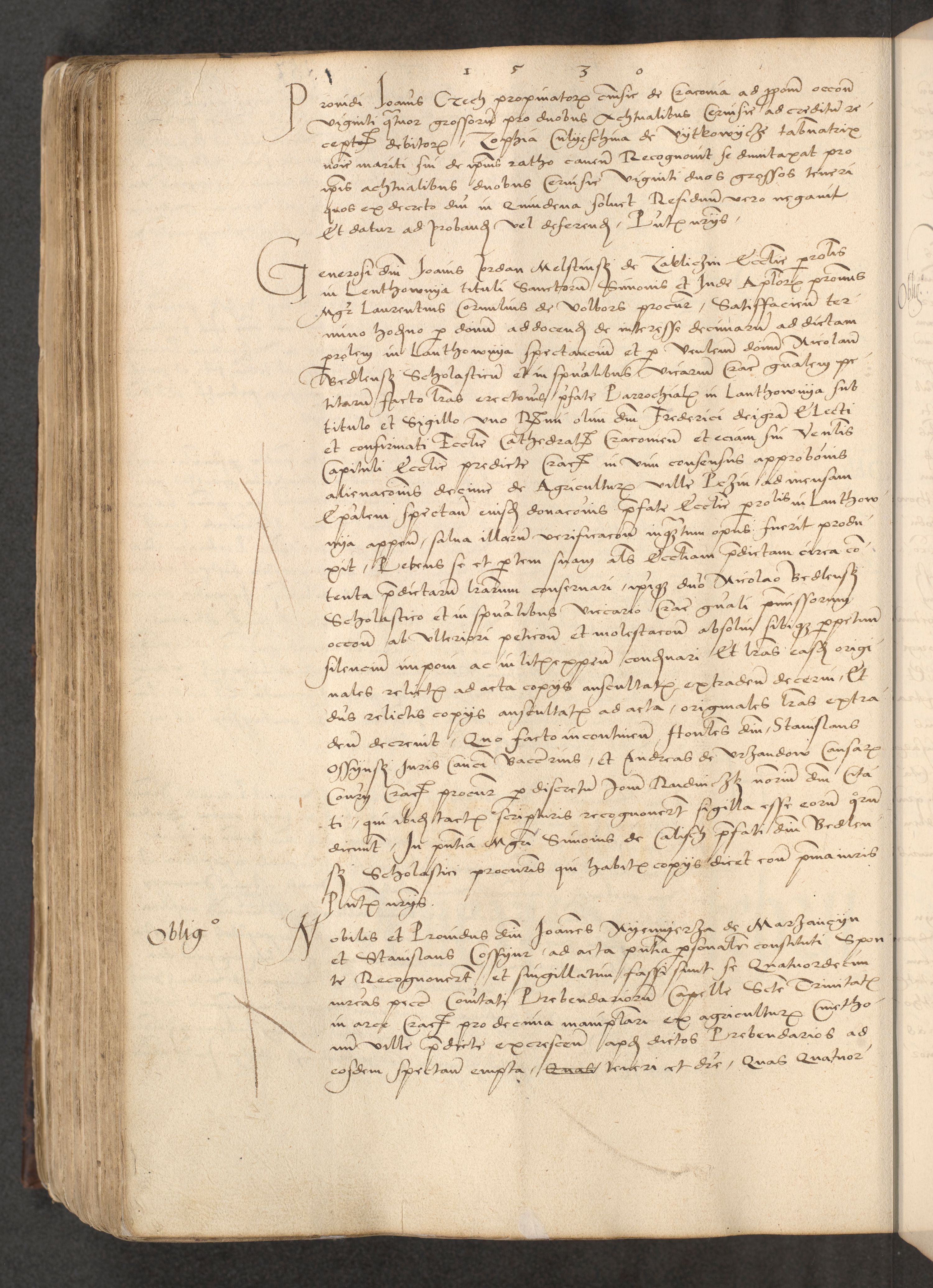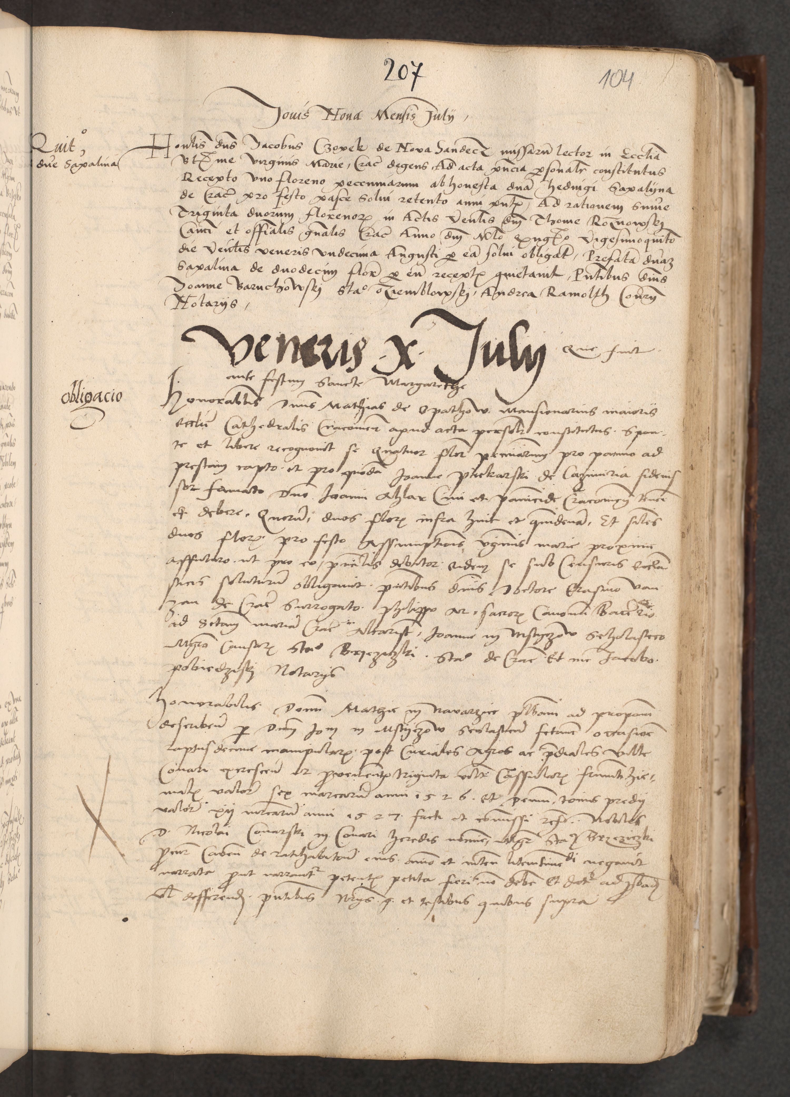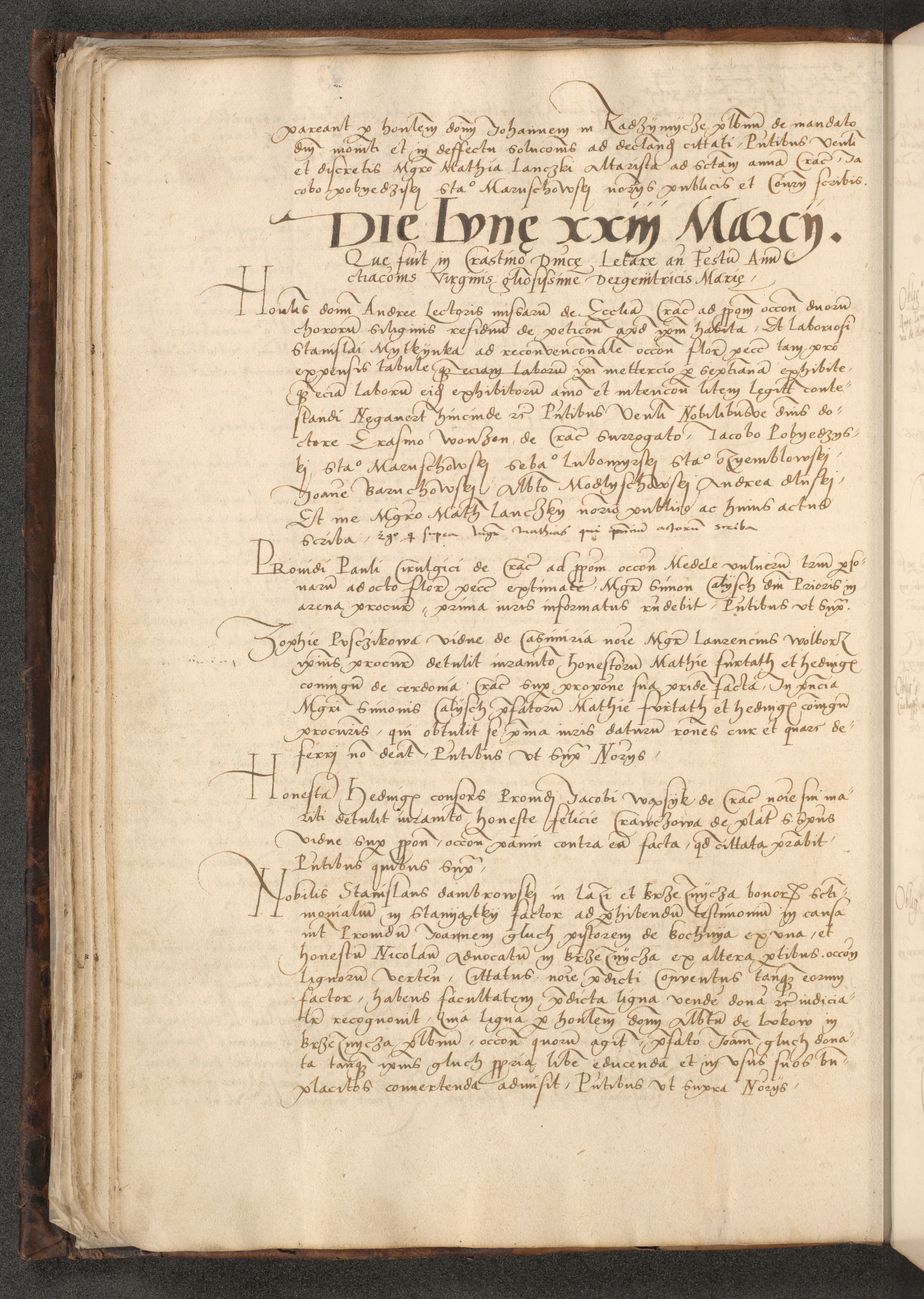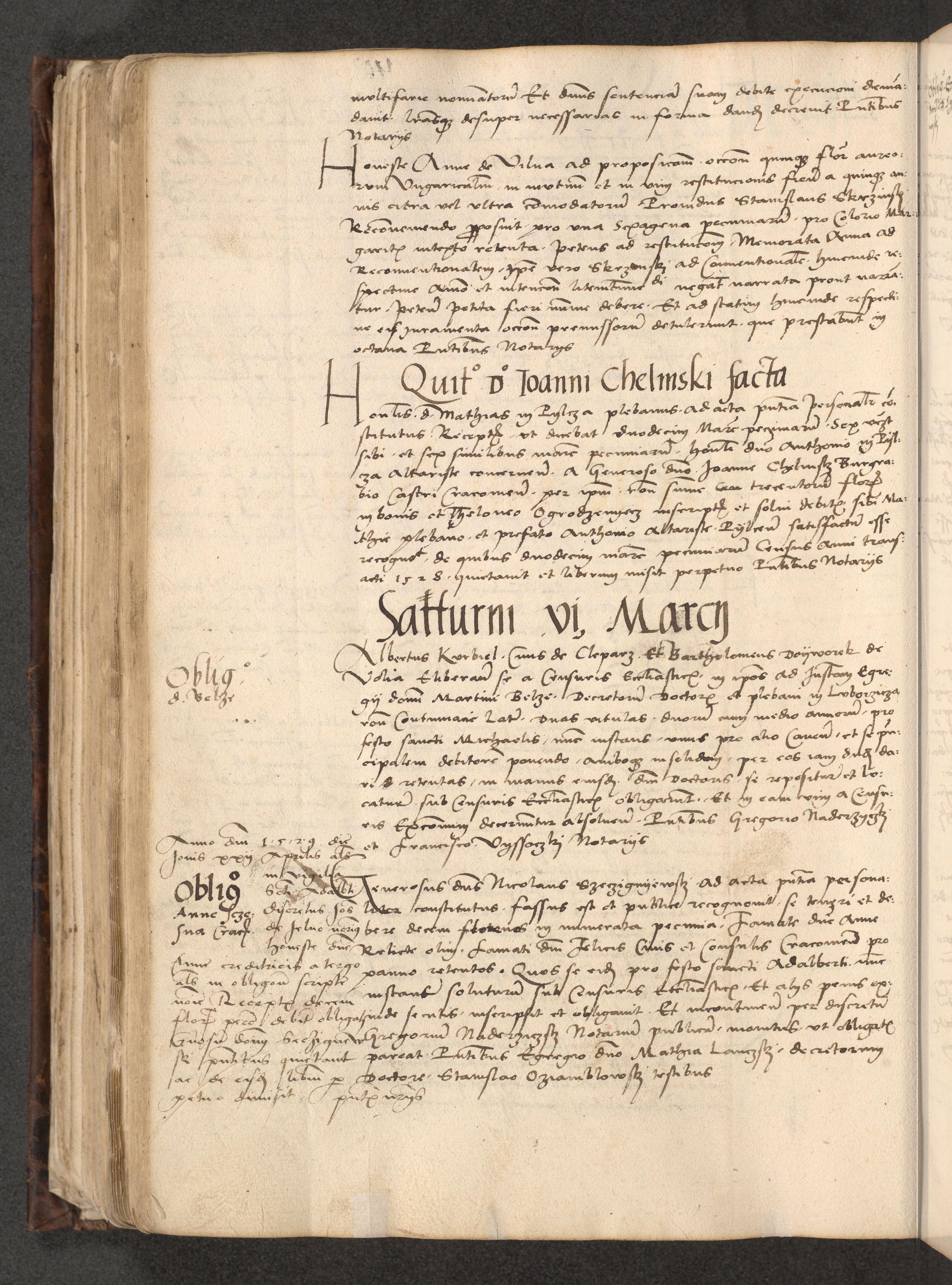 INRI. Acta actorum, obligacionum et sentenciarum tam interlocutoriarum quam diffinitivarum coram reverendo patre ac egregio viro domino Jacobo Erciss[o]wski decretorum doctorem, canonico et officiali generali Cracoviensi ad annum Domini 1528, indicionem primam, pontificatus sanctissimi in Christo patris et domini domini Clementis divina probidendcia pape seprtimi, annum quintum, per Stanislaum de Mordi legalem consistorii notarium omine felici inchoantur