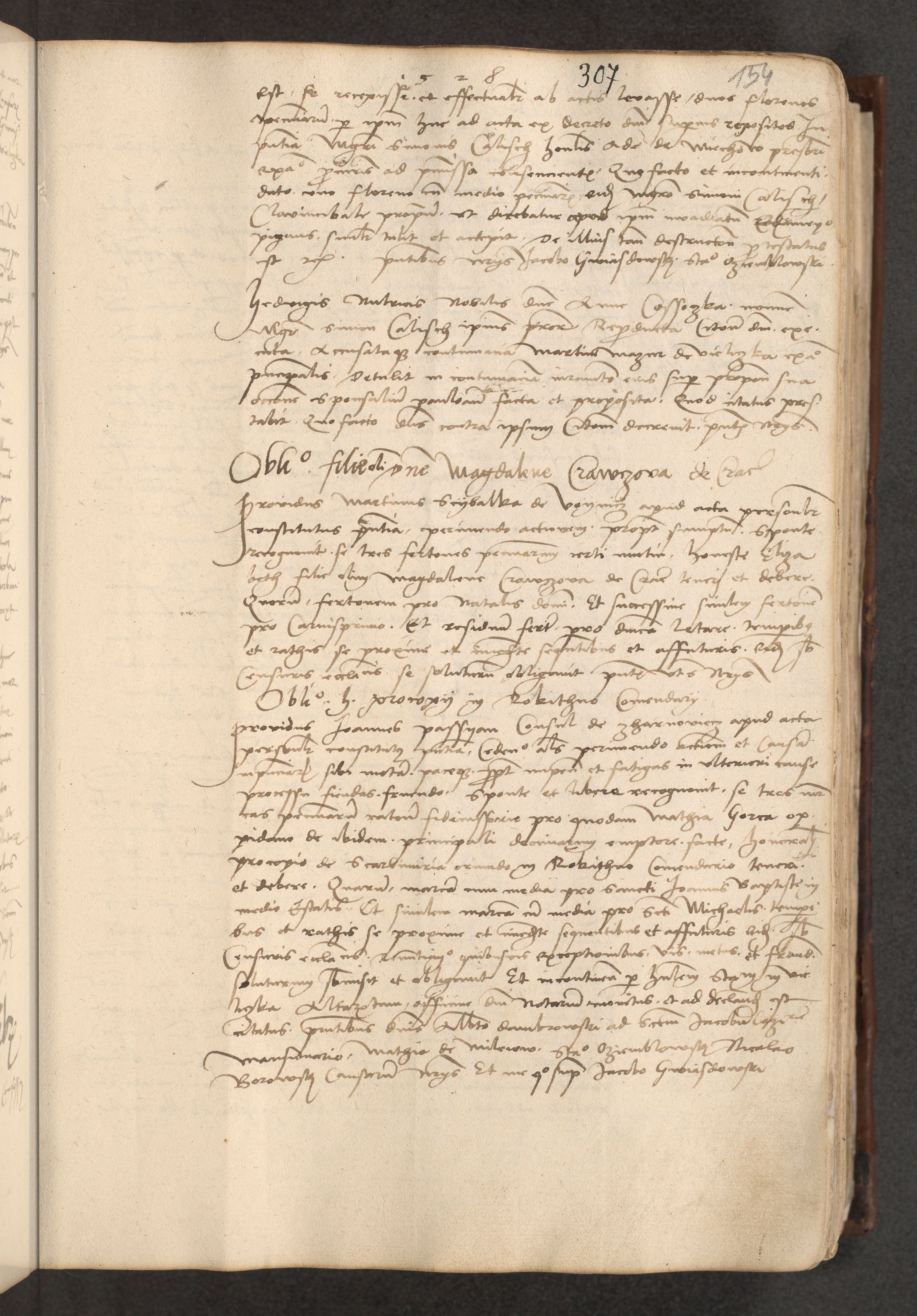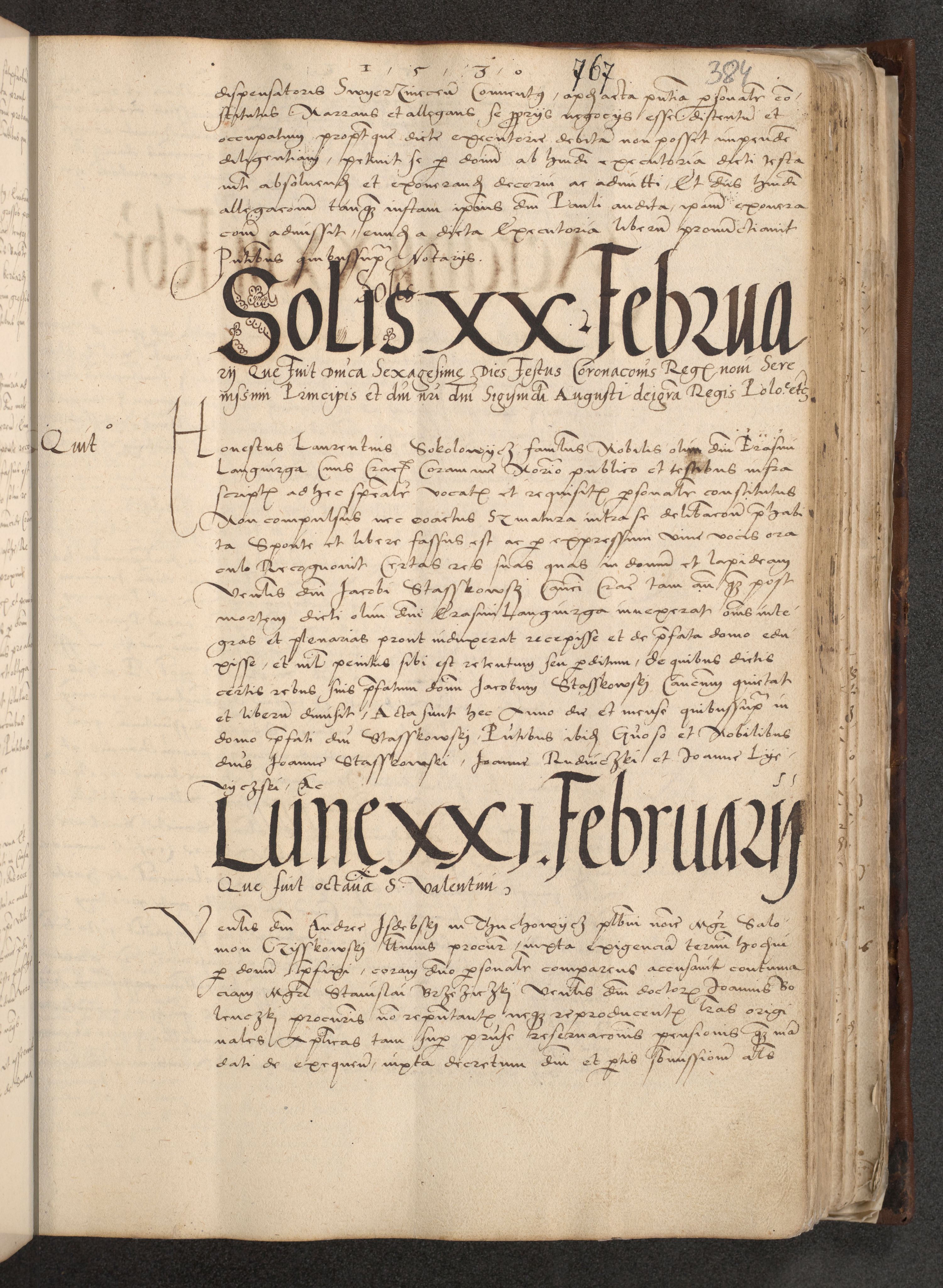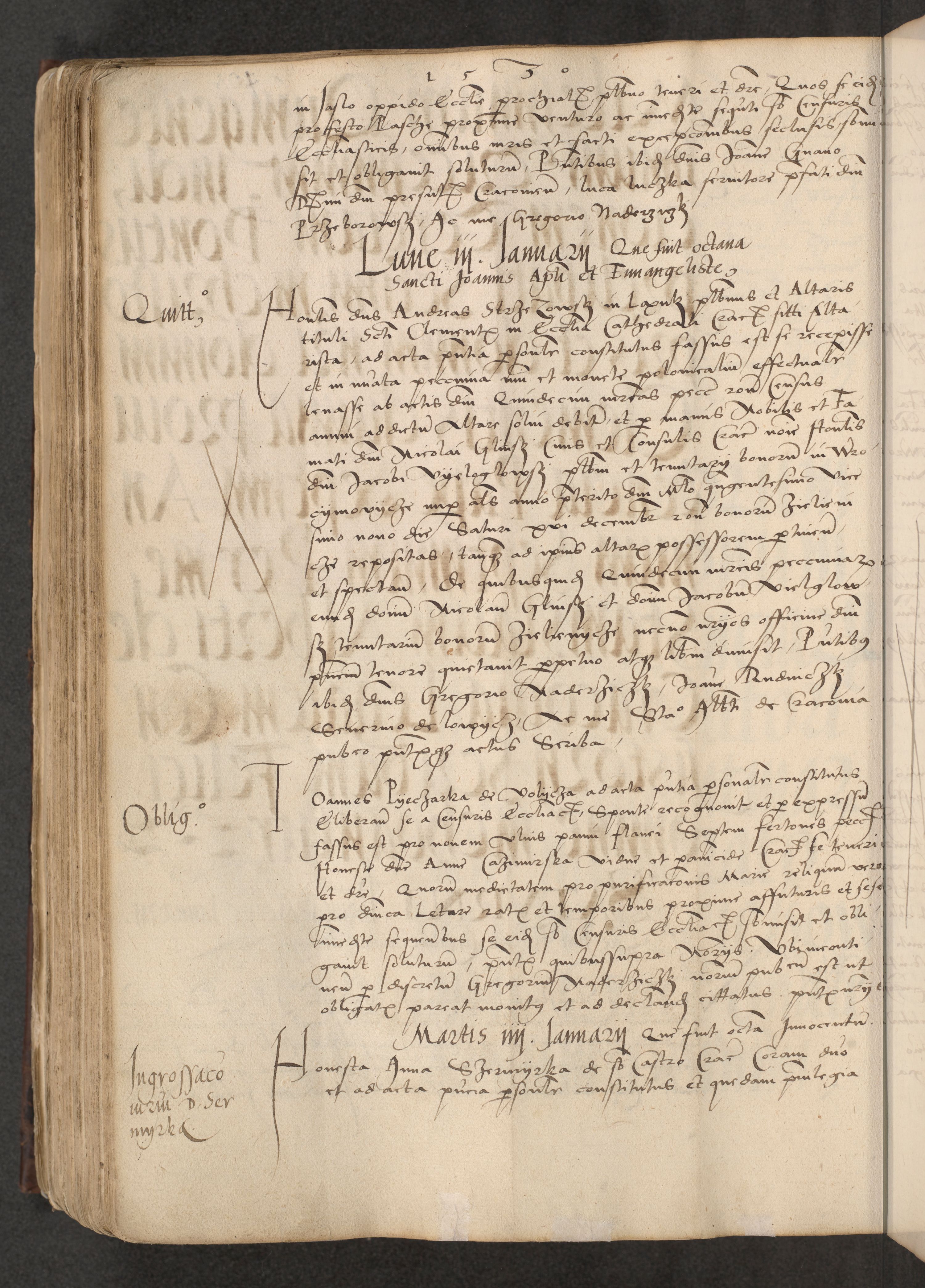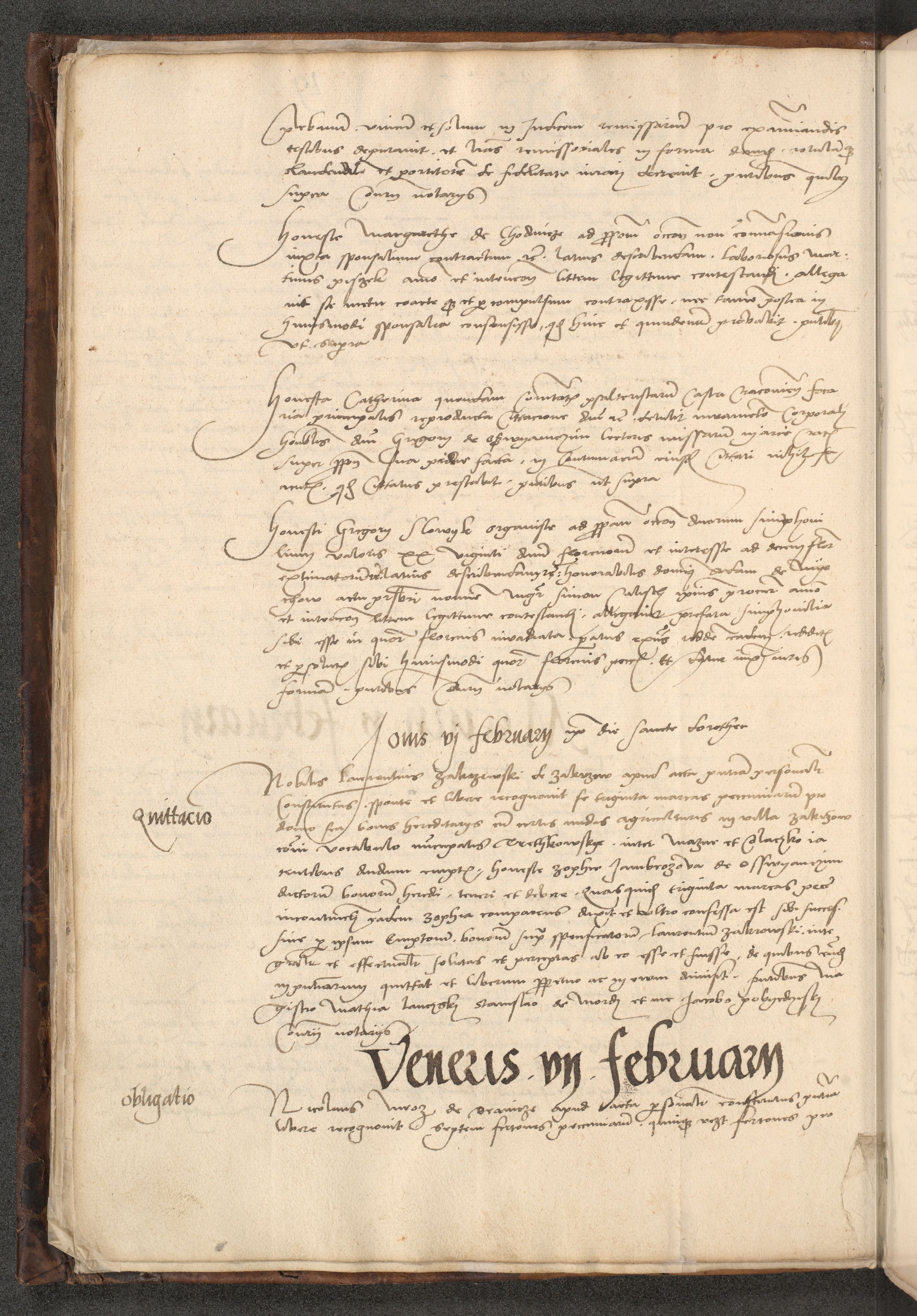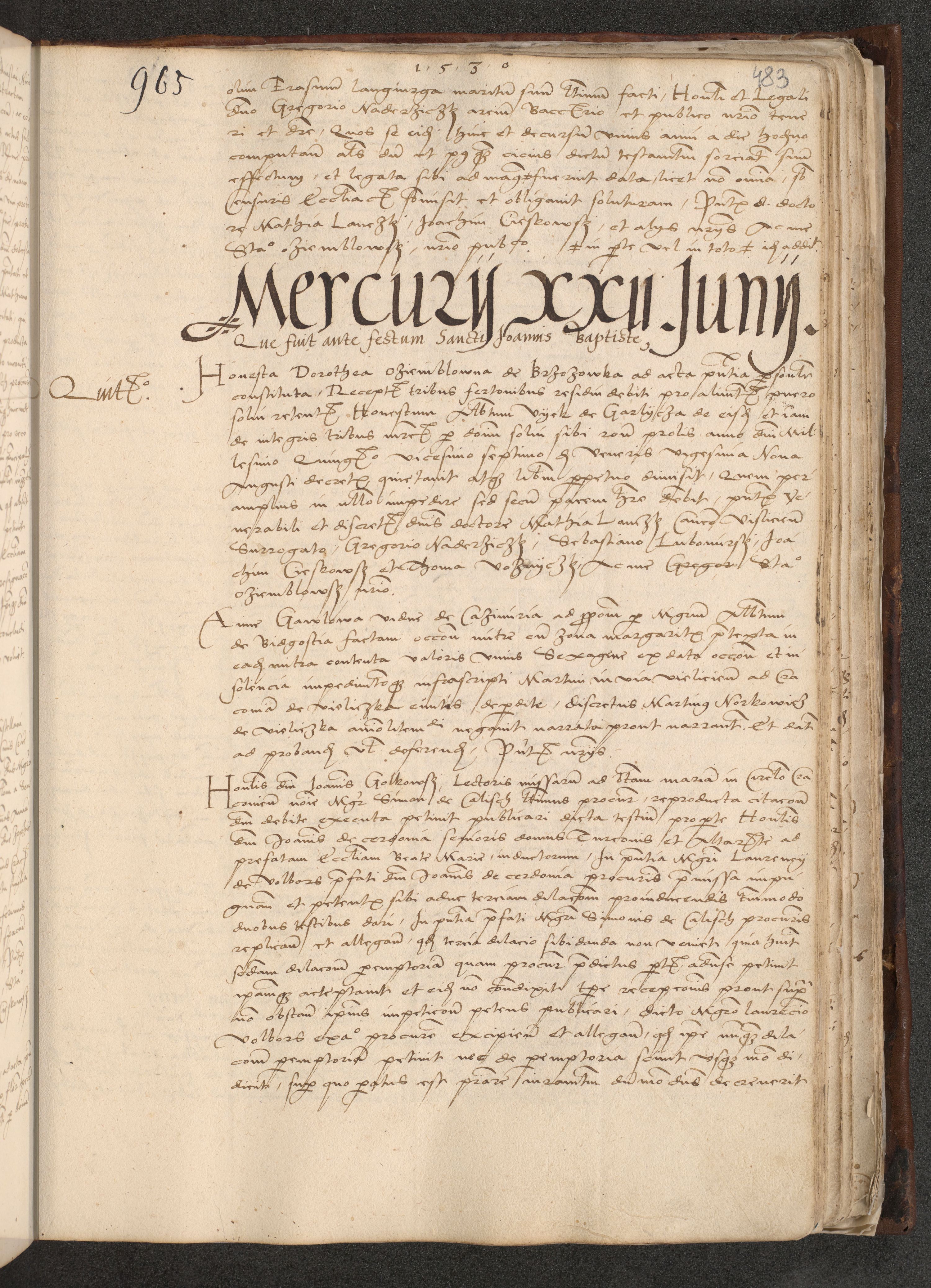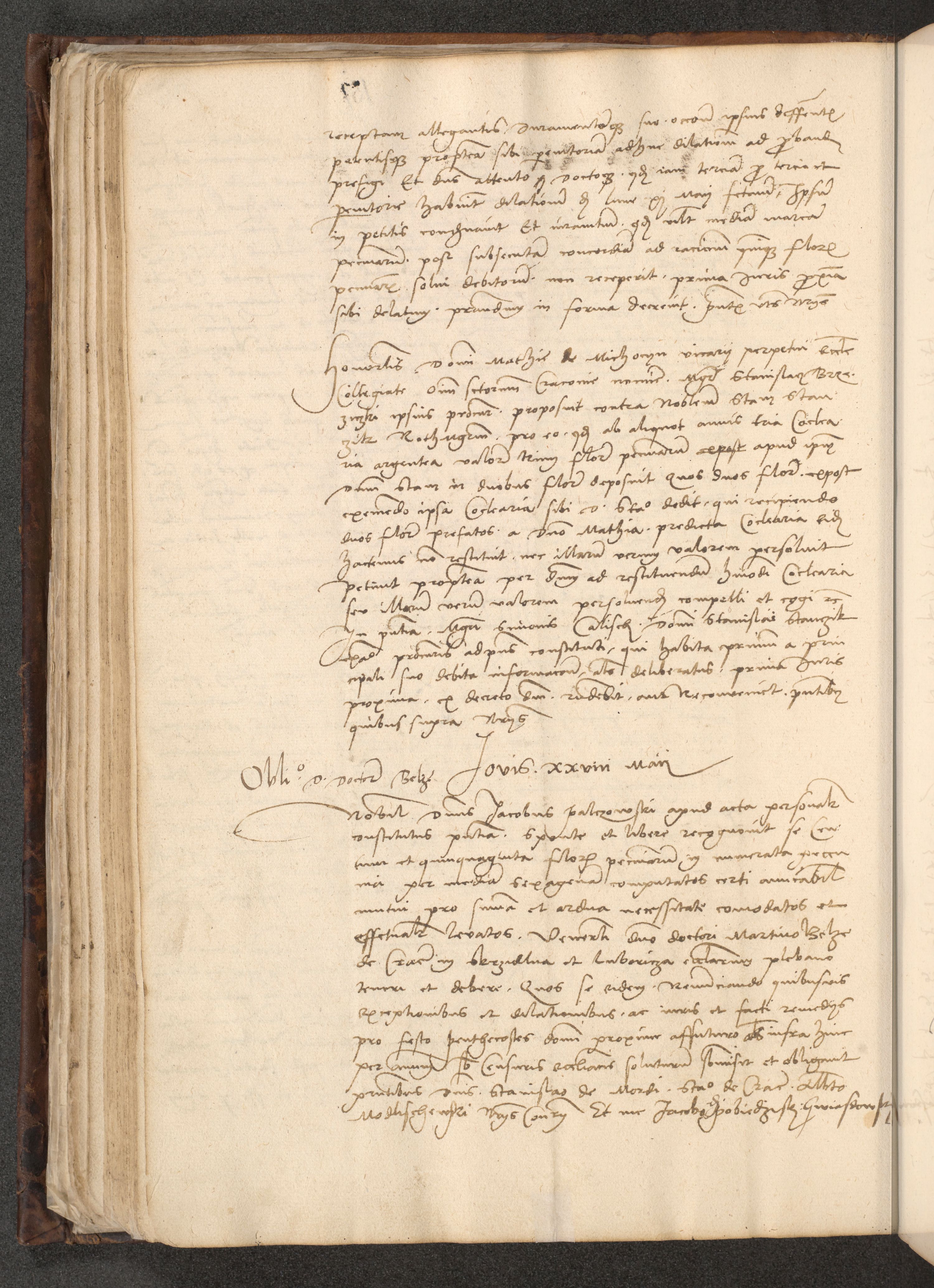 INRI. Acta actorum, obligacionum et sentenciarum tam interlocutoriarum quam diffinitivarum coram reverendo patre ac egregio viro domino Jacobo Erciss[o]wski decretorum doctorem, canonico et officiali generali Cracoviensi ad annum Domini 1528, indicionem primam, pontificatus sanctissimi in Christo patris et domini domini Clementis divina probidendcia pape seprtimi, annum quintum, per Stanislaum de Mordi legalem consistorii notarium omine felici inchoantur
