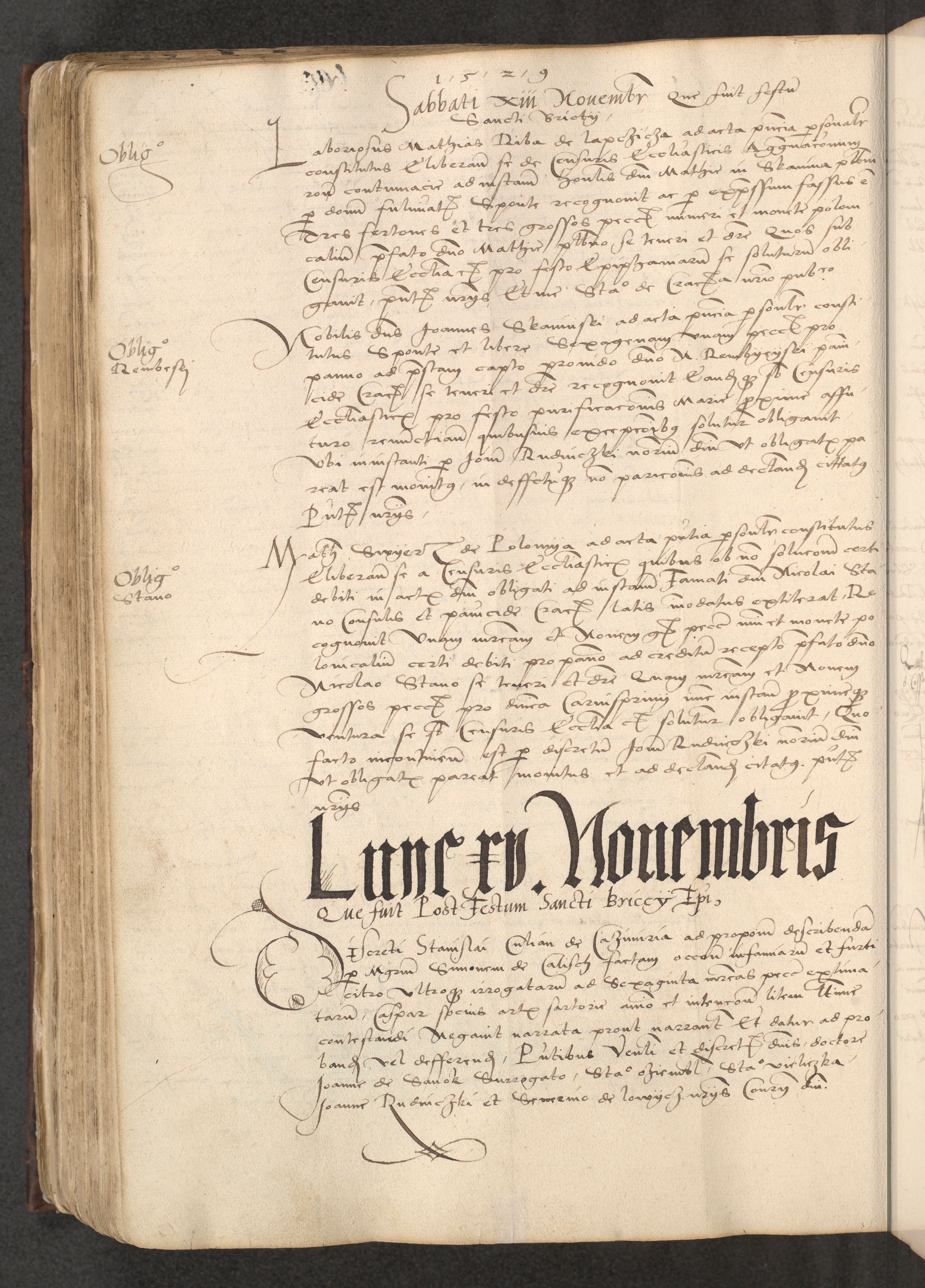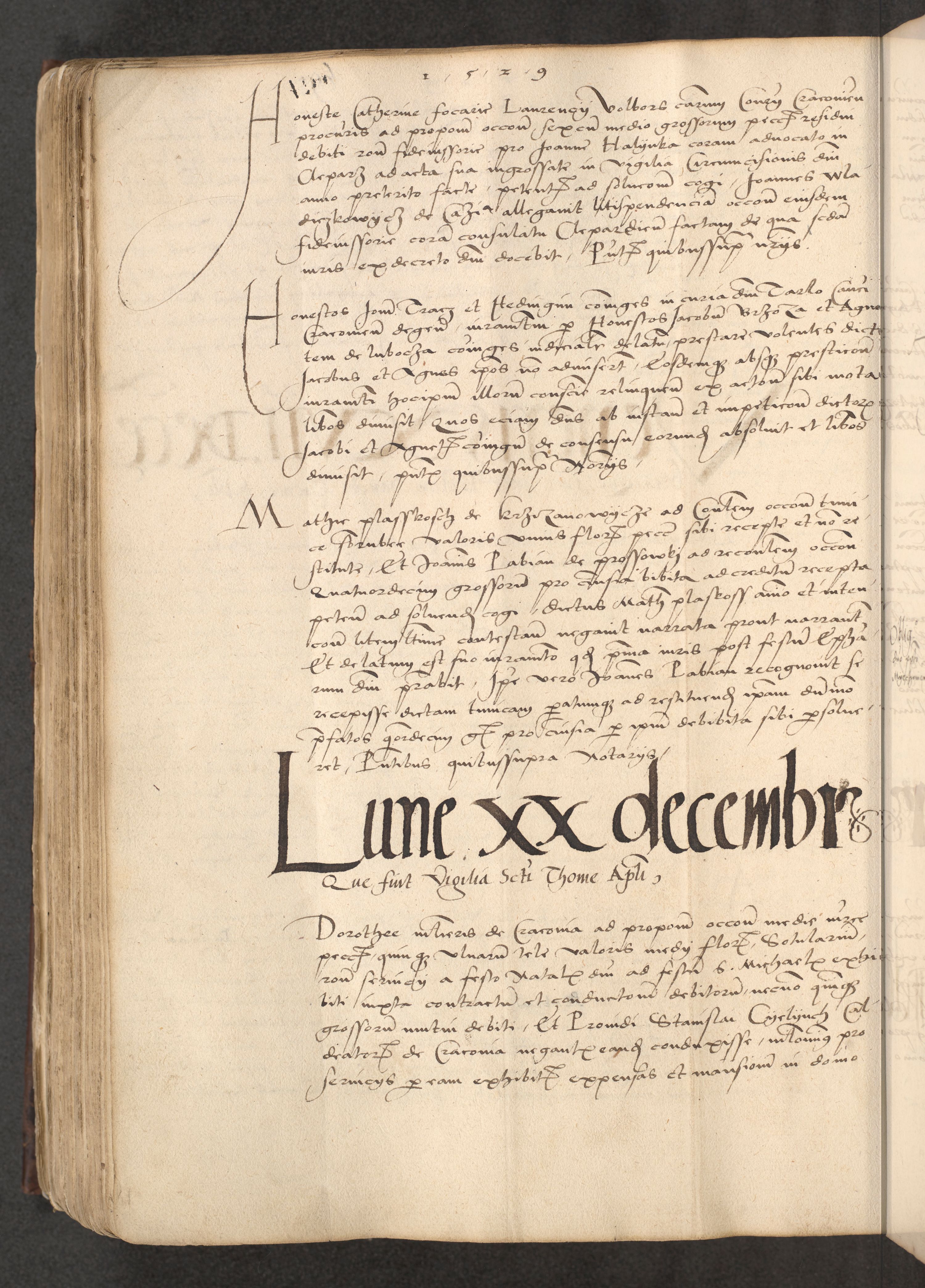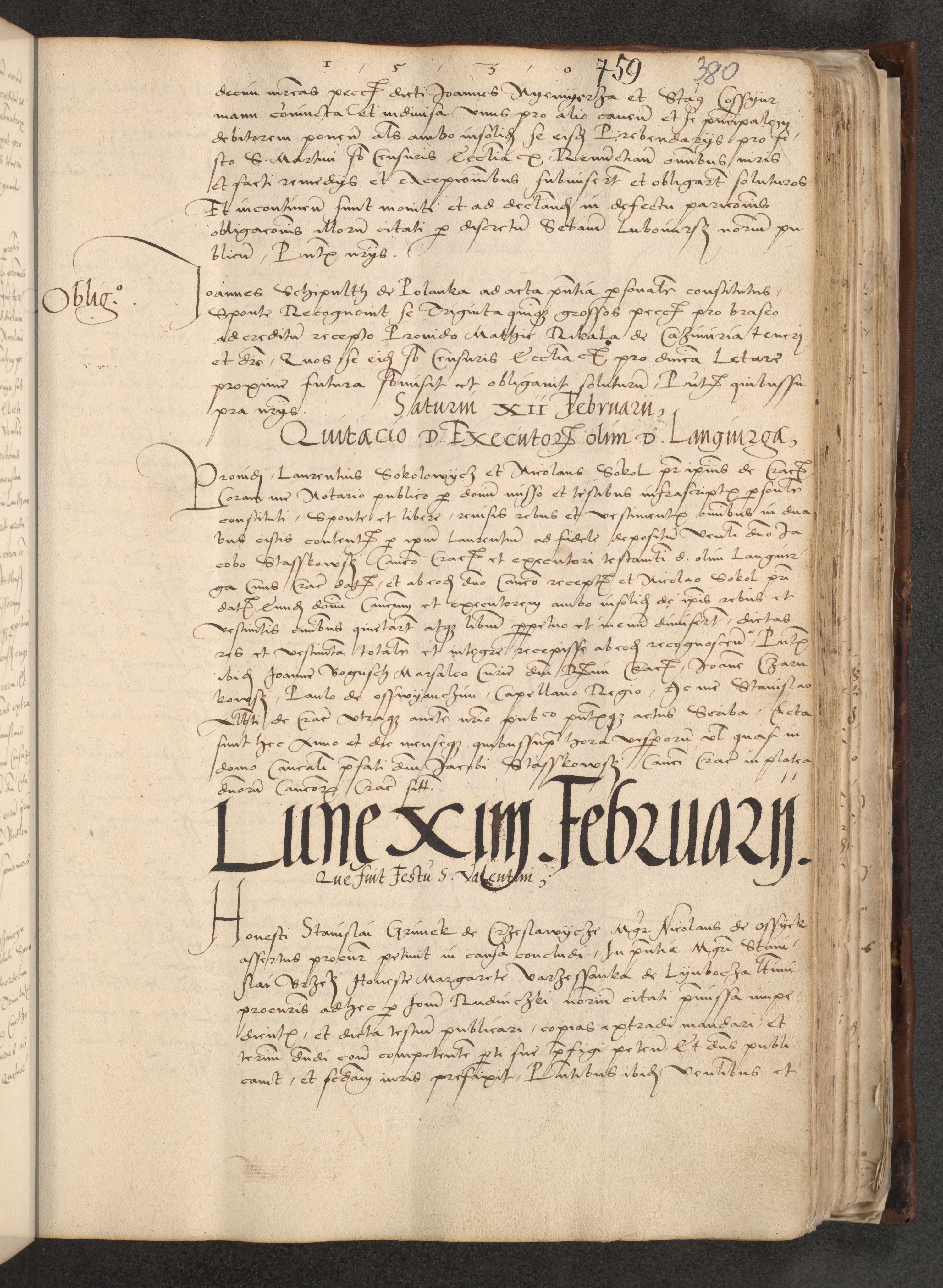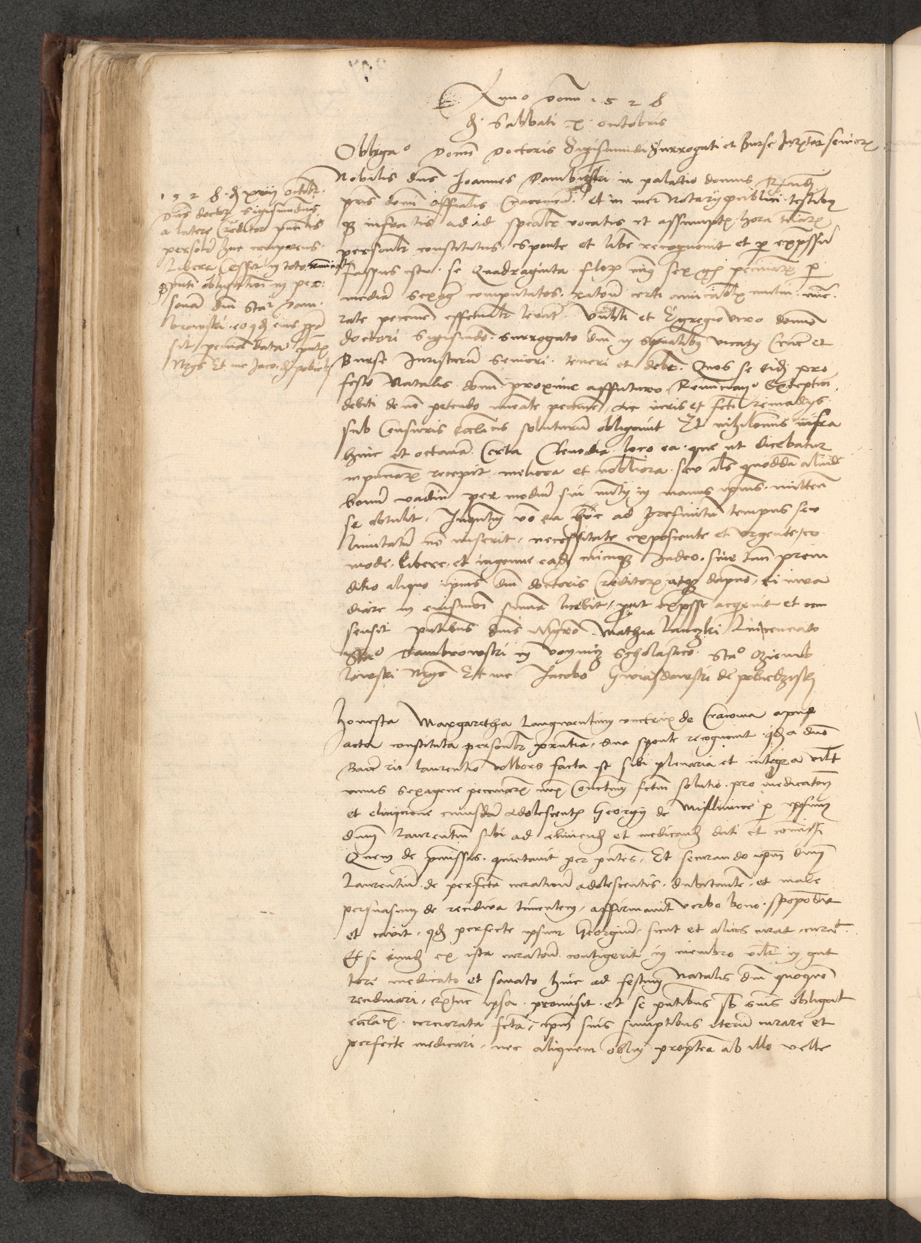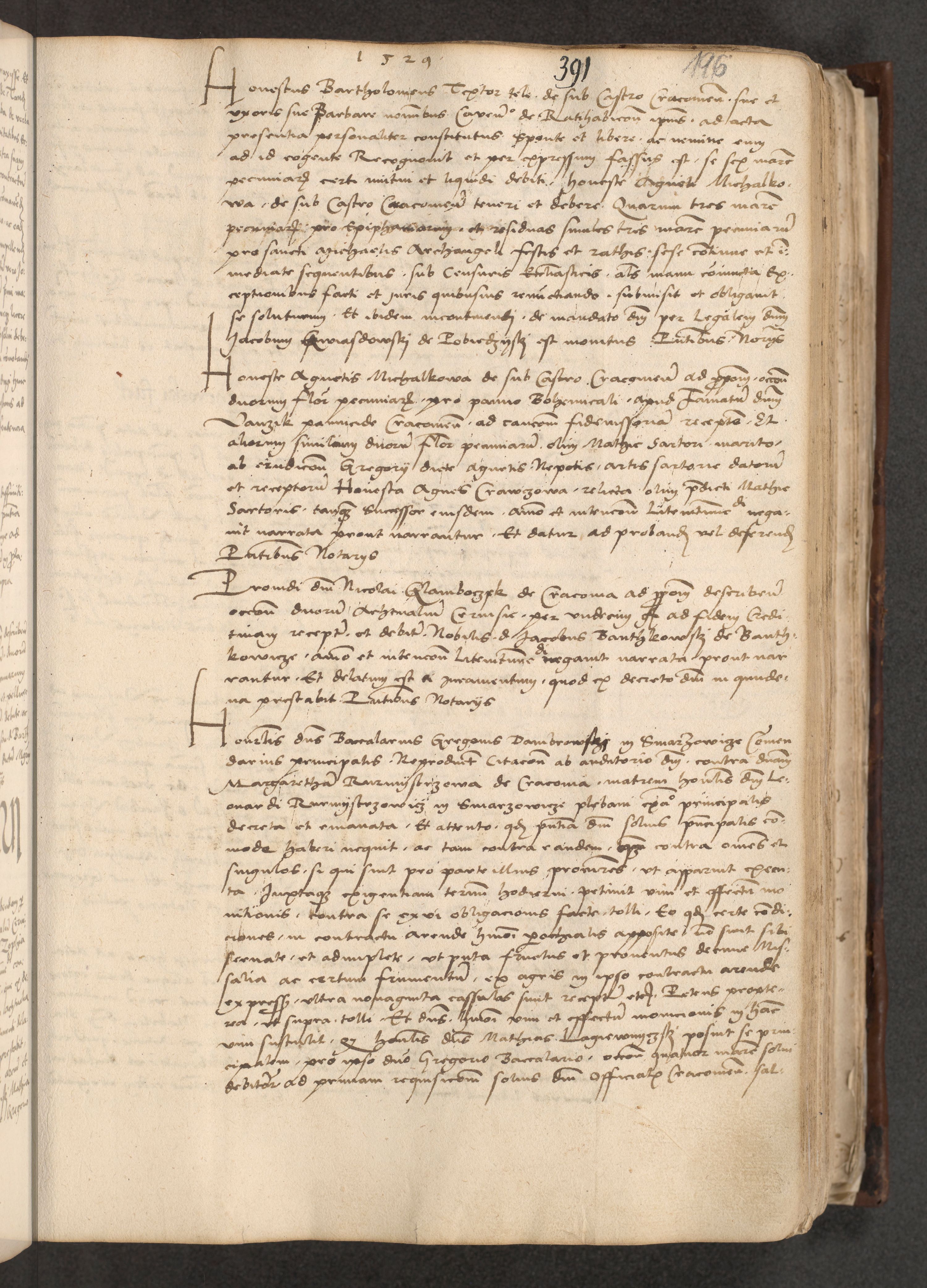 INRI. Acta actorum, obligacionum et sentenciarum tam interlocutoriarum quam diffinitivarum coram reverendo patre ac egregio viro domino Jacobo Erciss[o]wski decretorum doctorem, canonico et officiali generali Cracoviensi ad annum Domini 1528, indicionem primam, pontificatus sanctissimi in Christo patris et domini domini Clementis divina probidendcia pape seprtimi, annum quintum, per Stanislaum de Mordi legalem consistorii notarium omine felici inchoantur