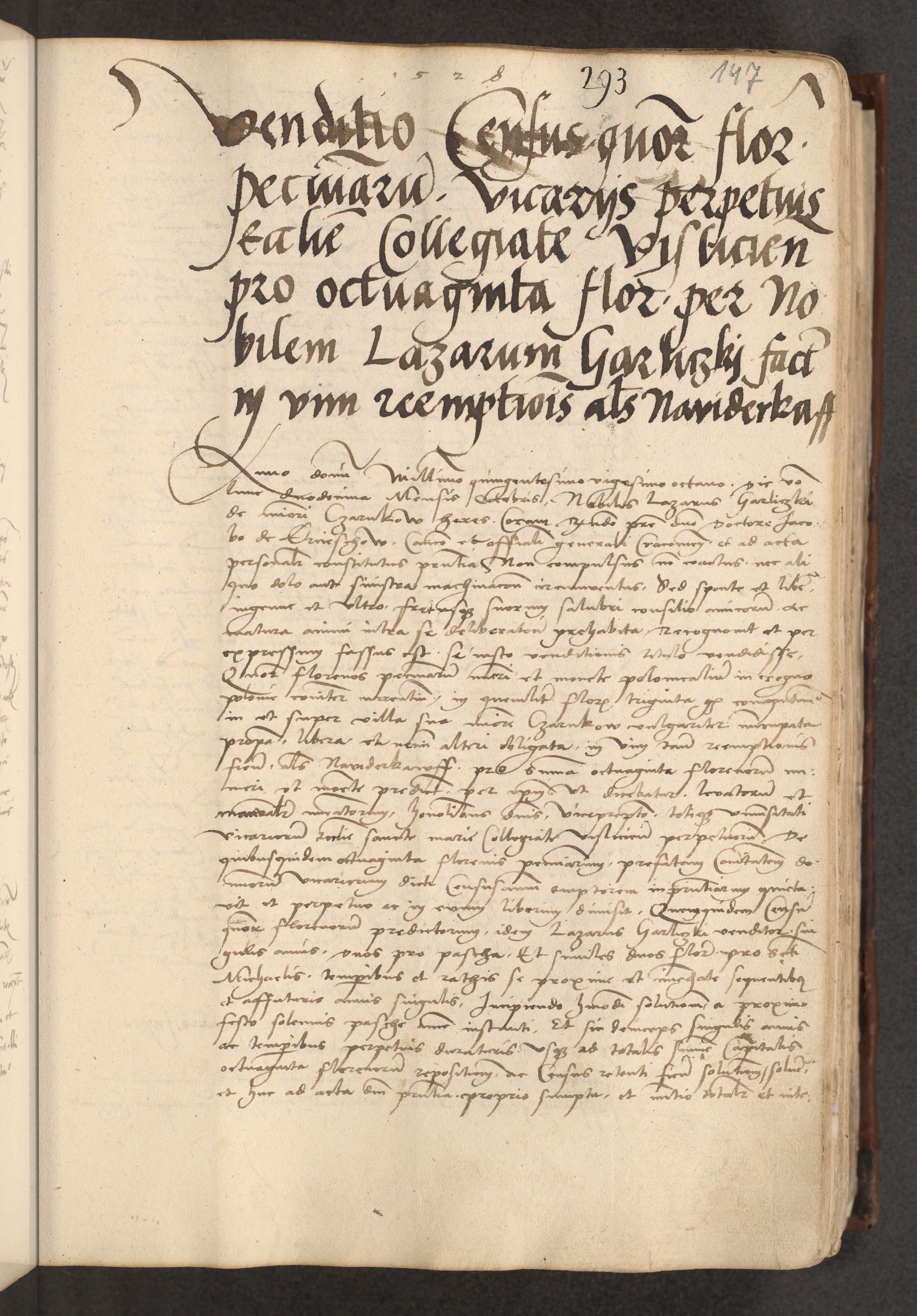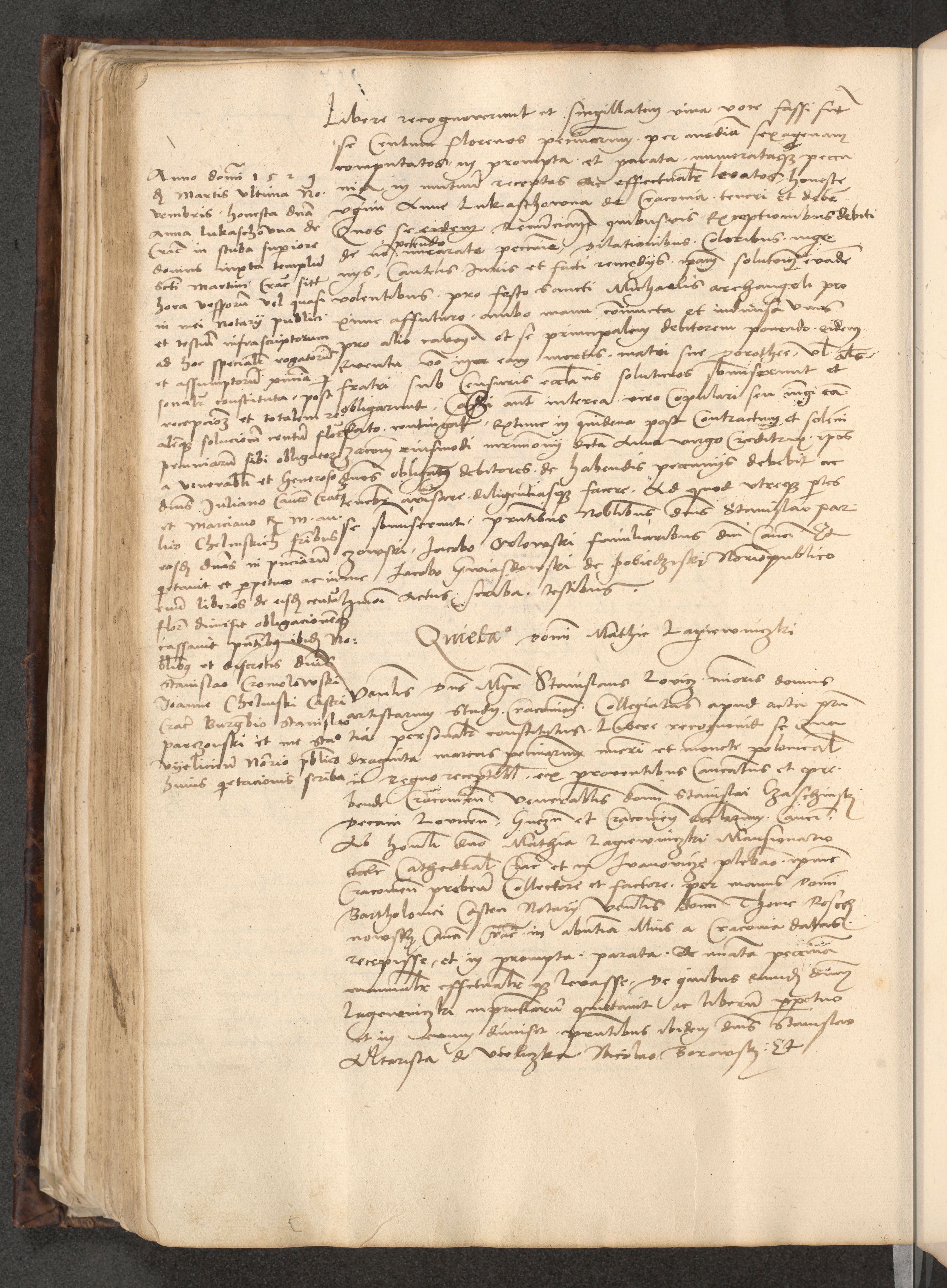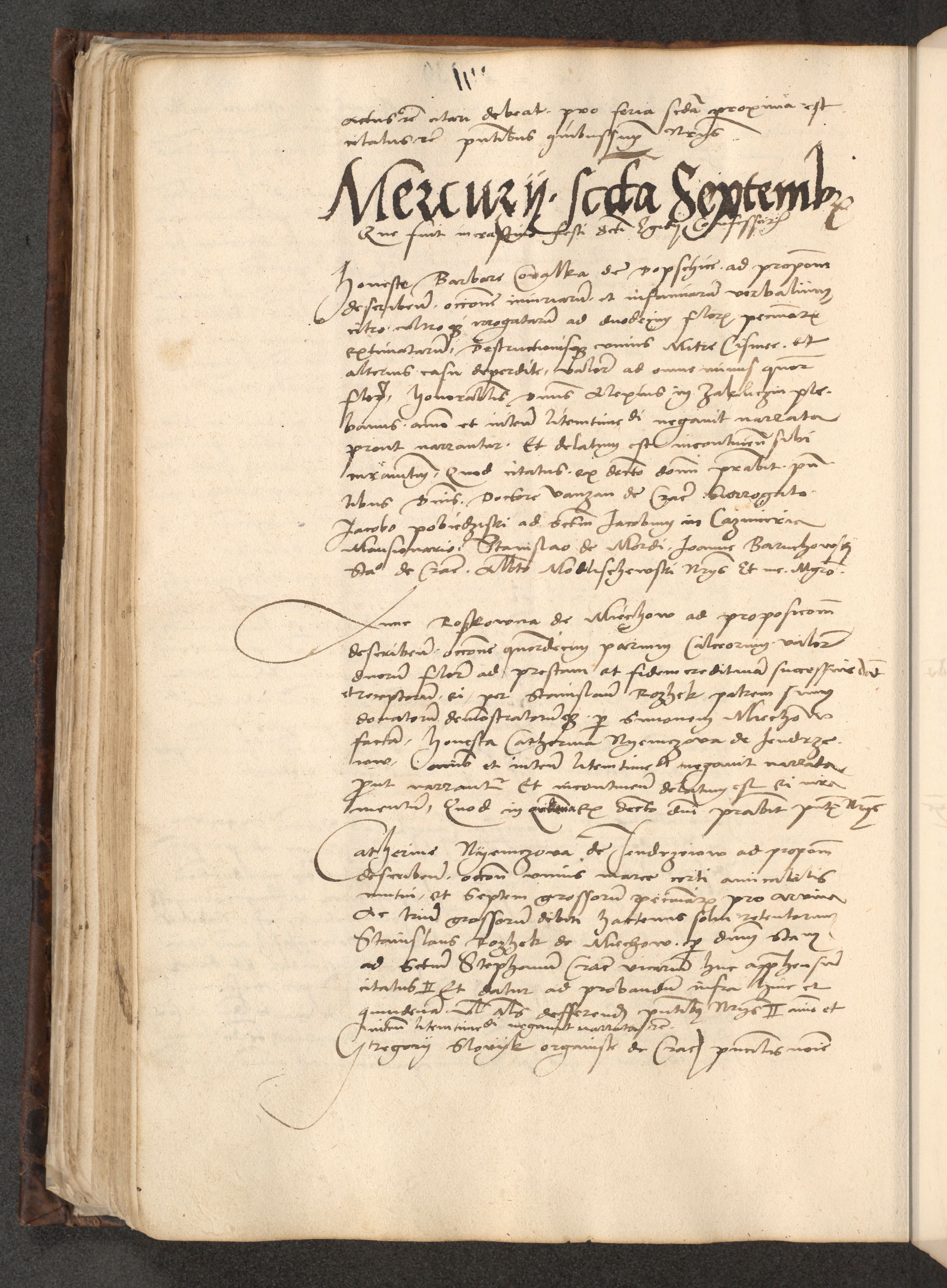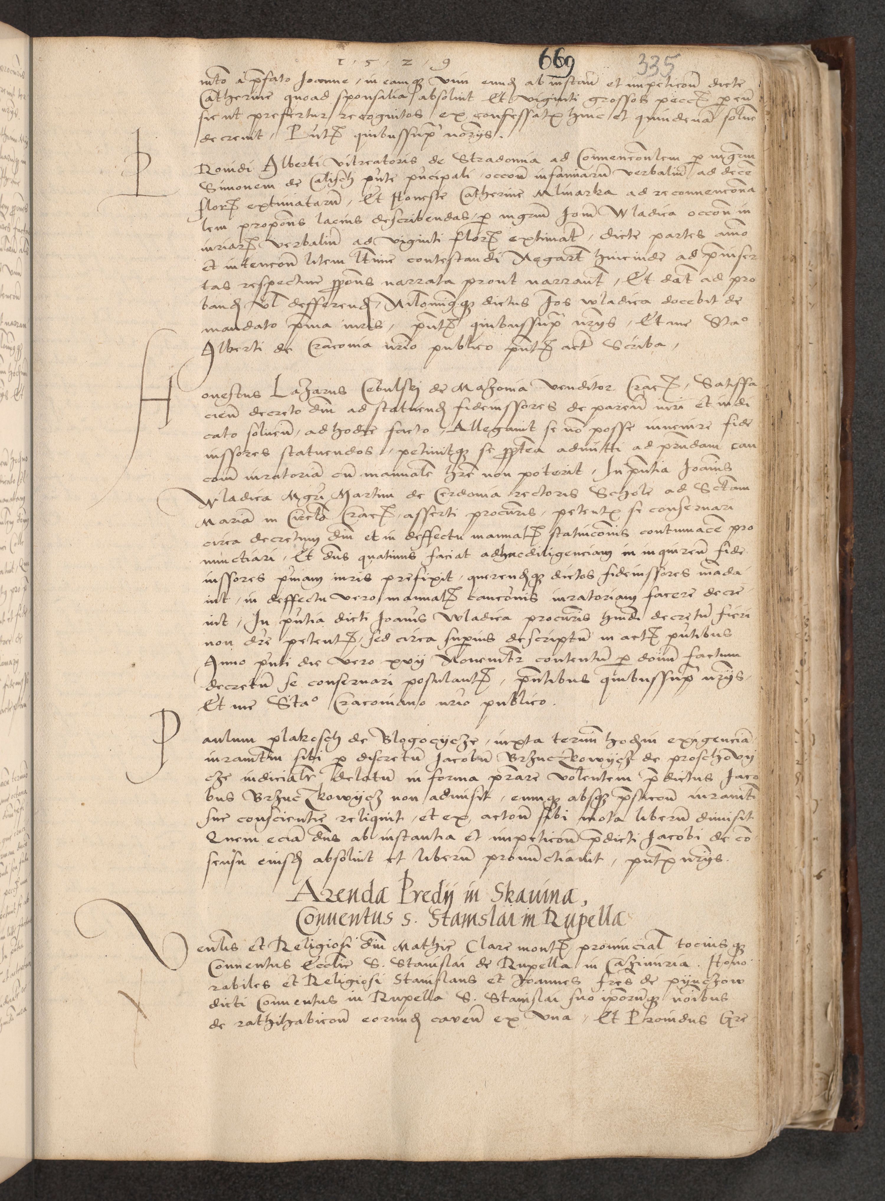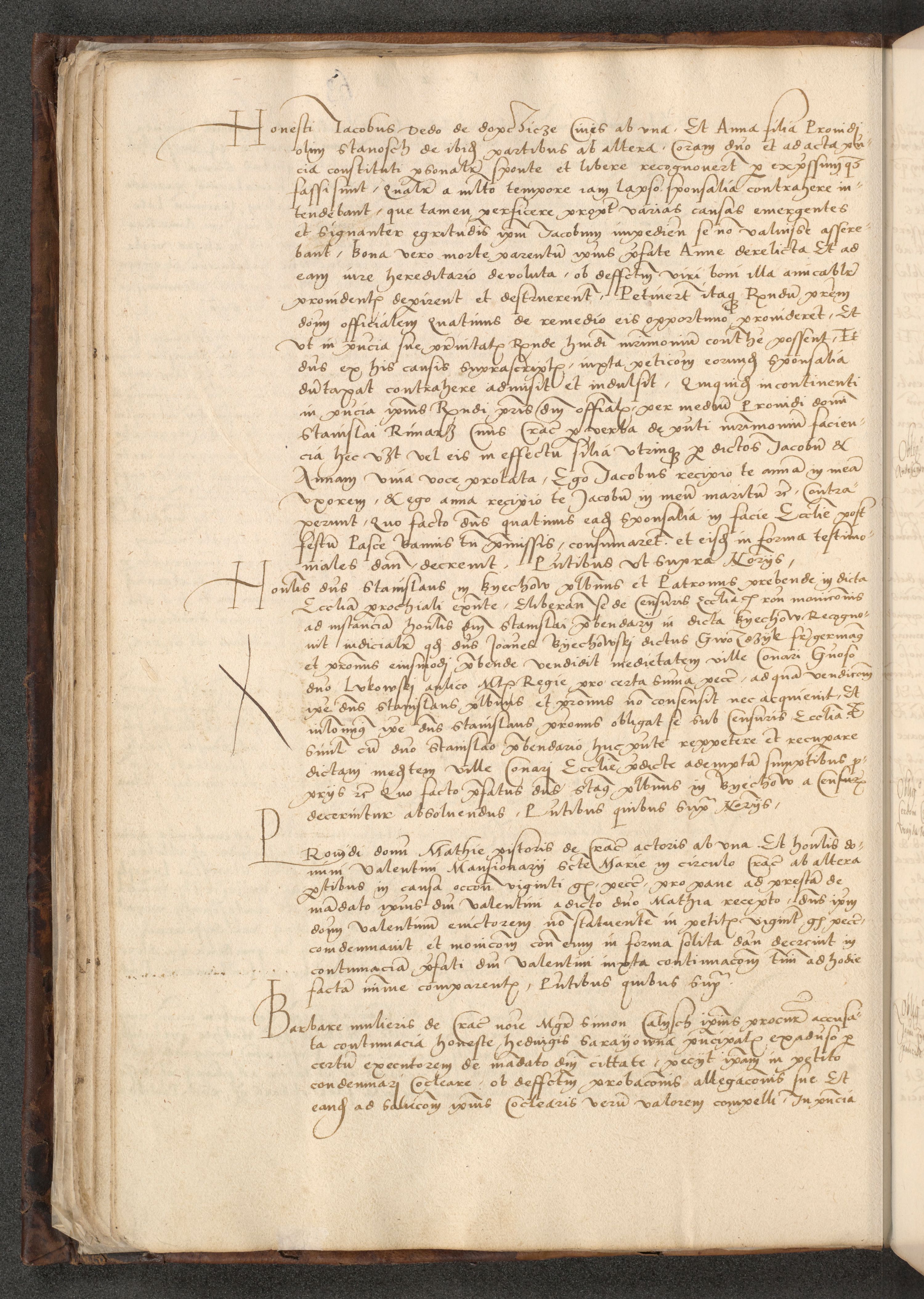 INRI. Acta actorum, obligacionum et sentenciarum tam interlocutoriarum quam diffinitivarum coram reverendo patre ac egregio viro domino Jacobo Erciss[o]wski decretorum doctorem, canonico et officiali generali Cracoviensi ad annum Domini 1528, indicionem primam, pontificatus sanctissimi in Christo patris et domini domini Clementis divina probidendcia pape seprtimi, annum quintum, per Stanislaum de Mordi legalem consistorii notarium omine felici inchoantur