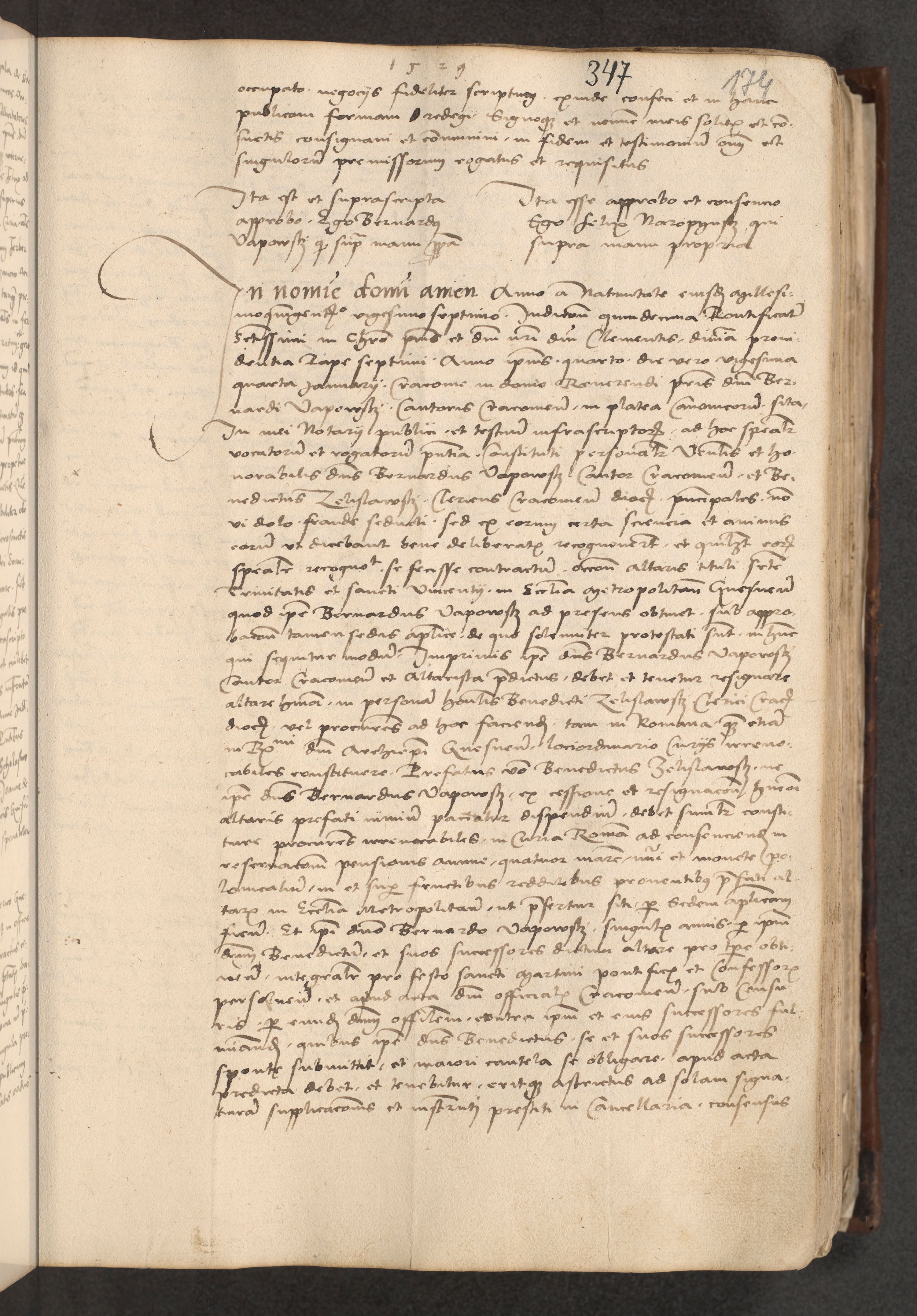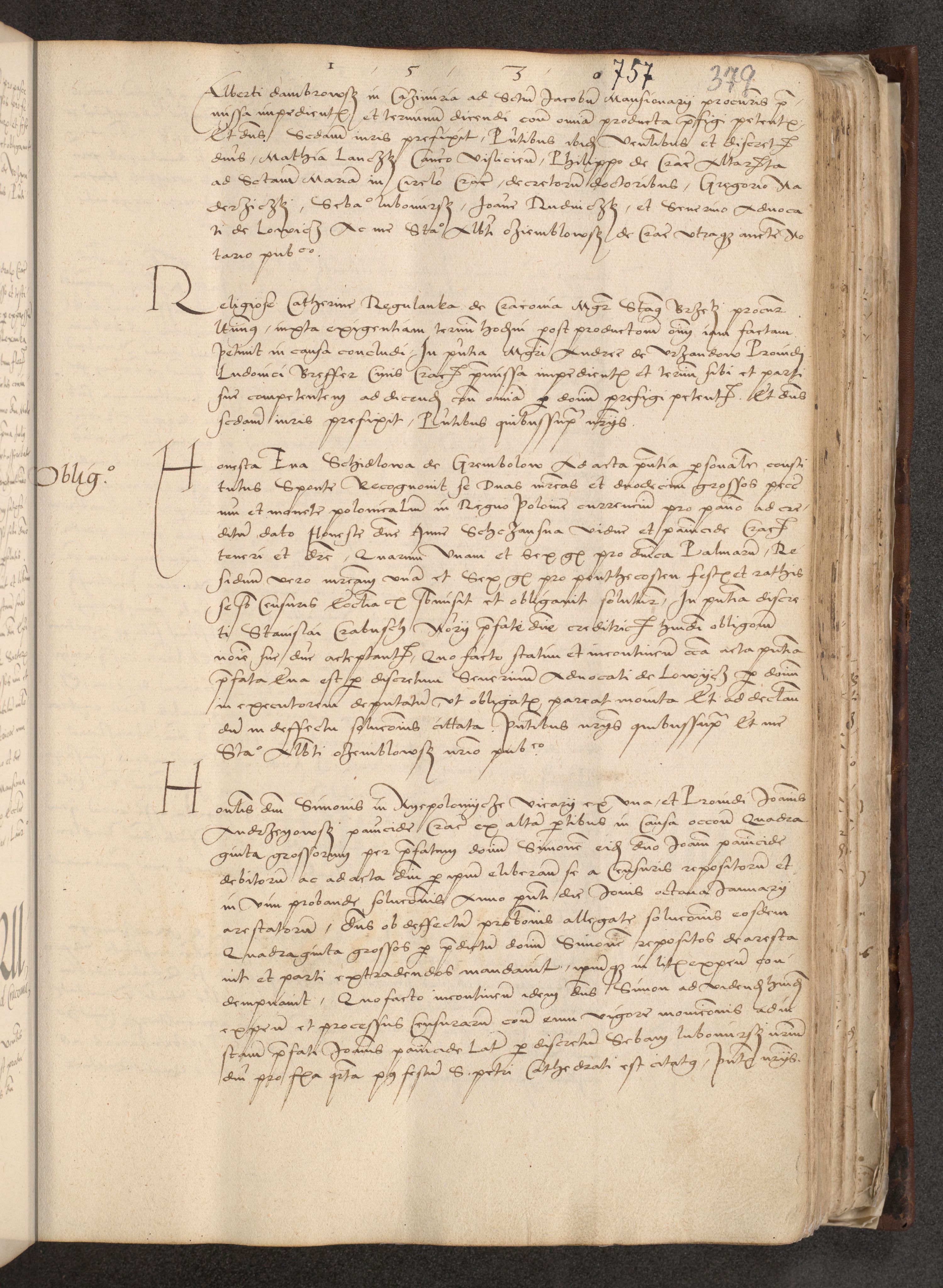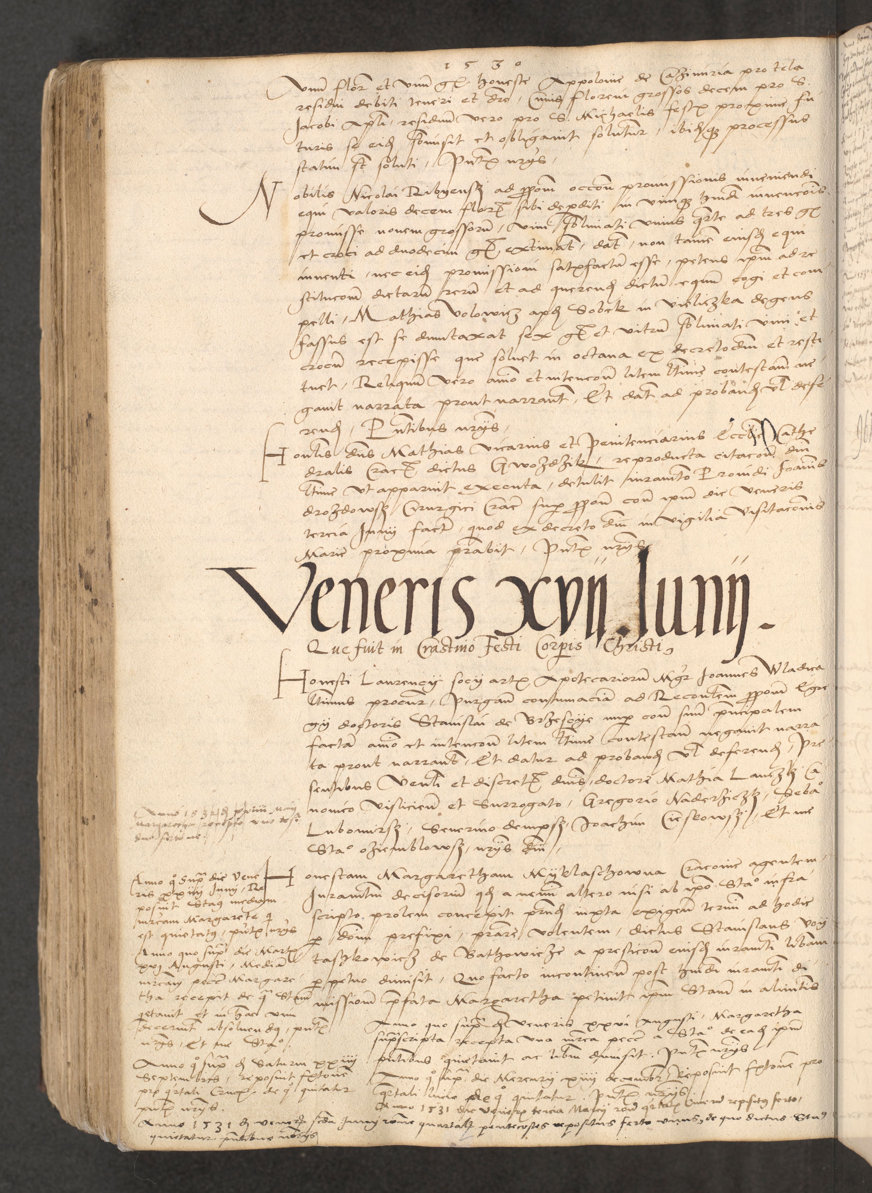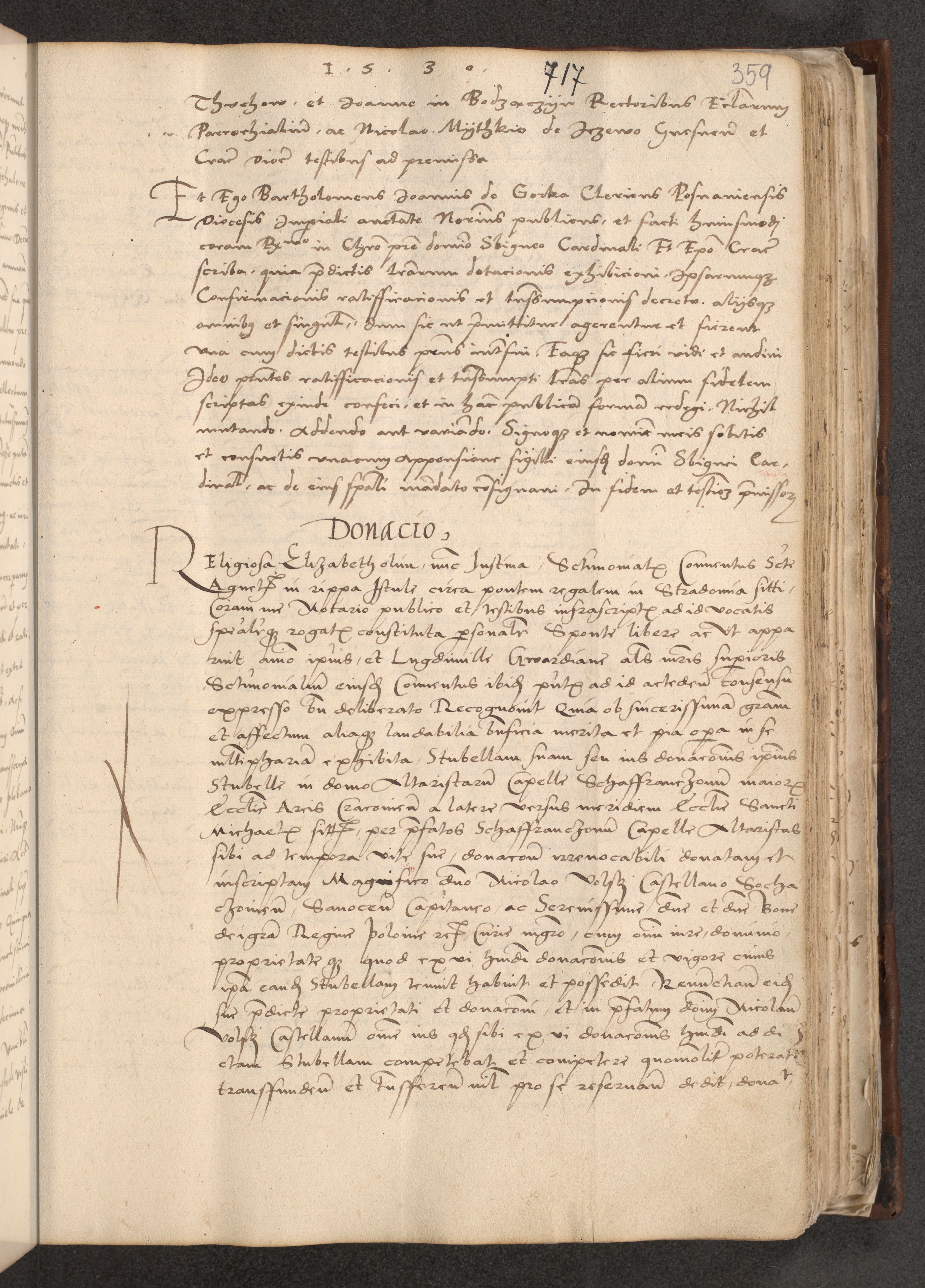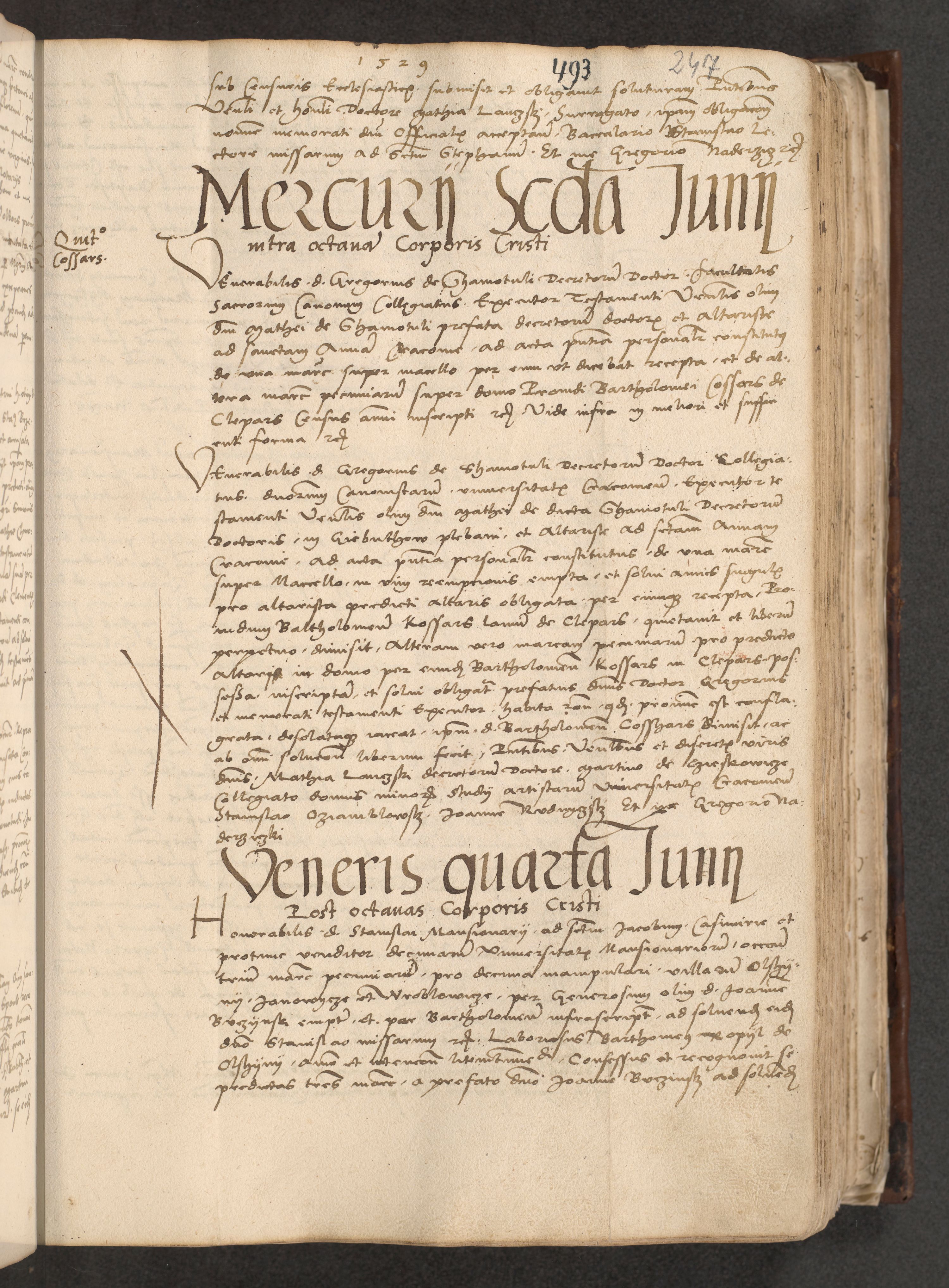 INRI. Acta actorum, obligacionum et sentenciarum tam interlocutoriarum quam diffinitivarum coram reverendo patre ac egregio viro domino Jacobo Erciss[o]wski decretorum doctorem, canonico et officiali generali Cracoviensi ad annum Domini 1528, indicionem primam, pontificatus sanctissimi in Christo patris et domini domini Clementis divina probidendcia pape seprtimi, annum quintum, per Stanislaum de Mordi legalem consistorii notarium omine felici inchoantur